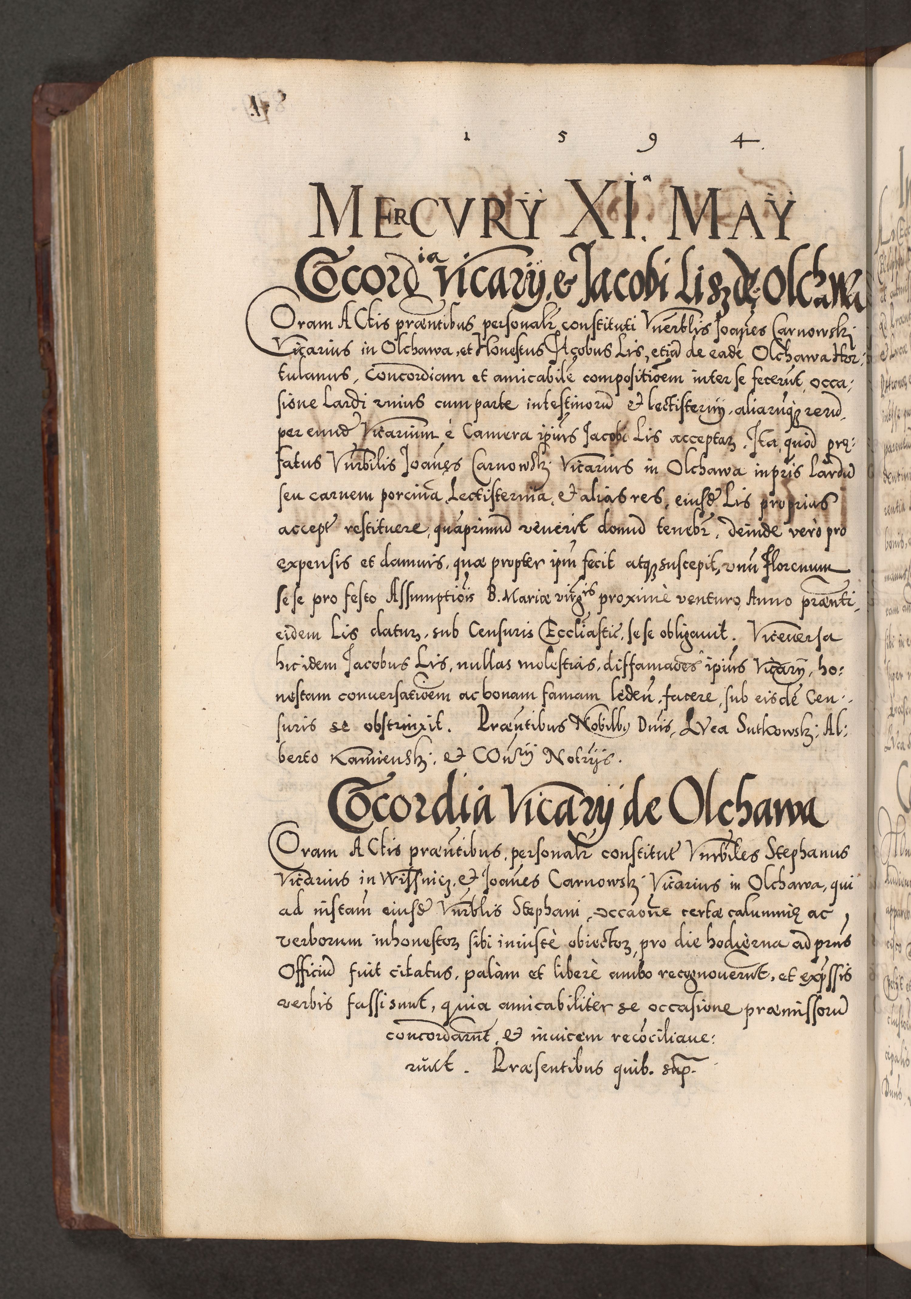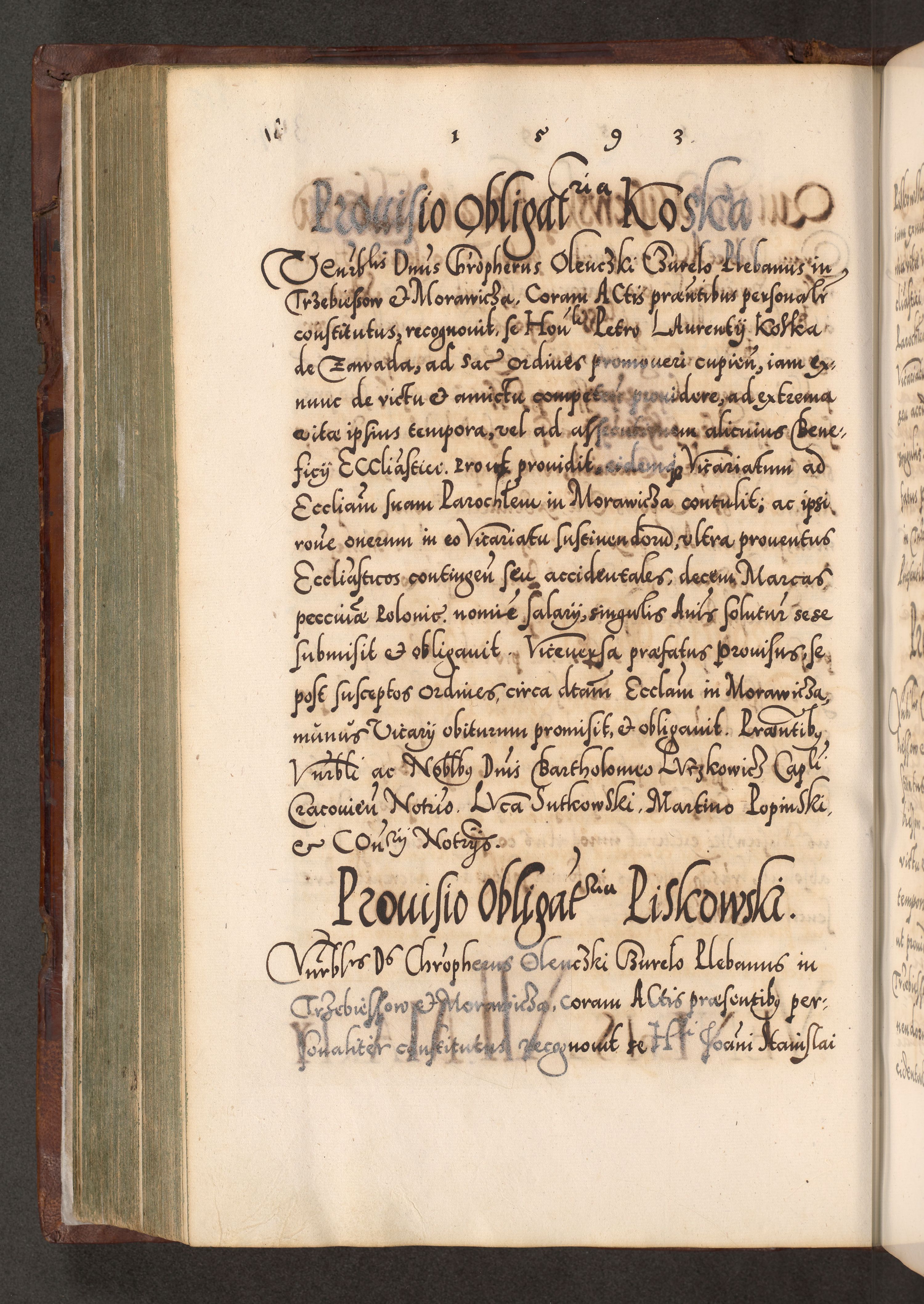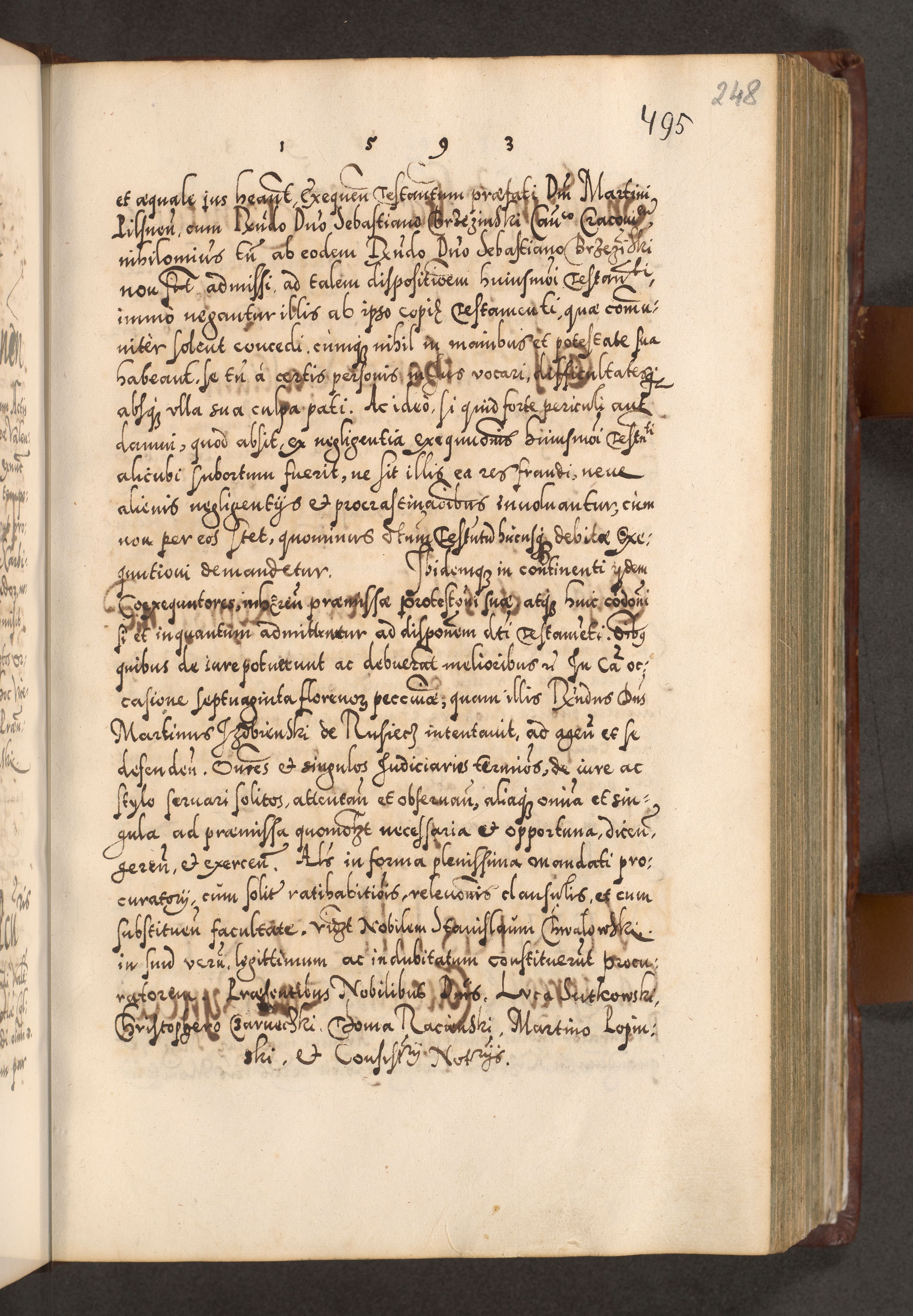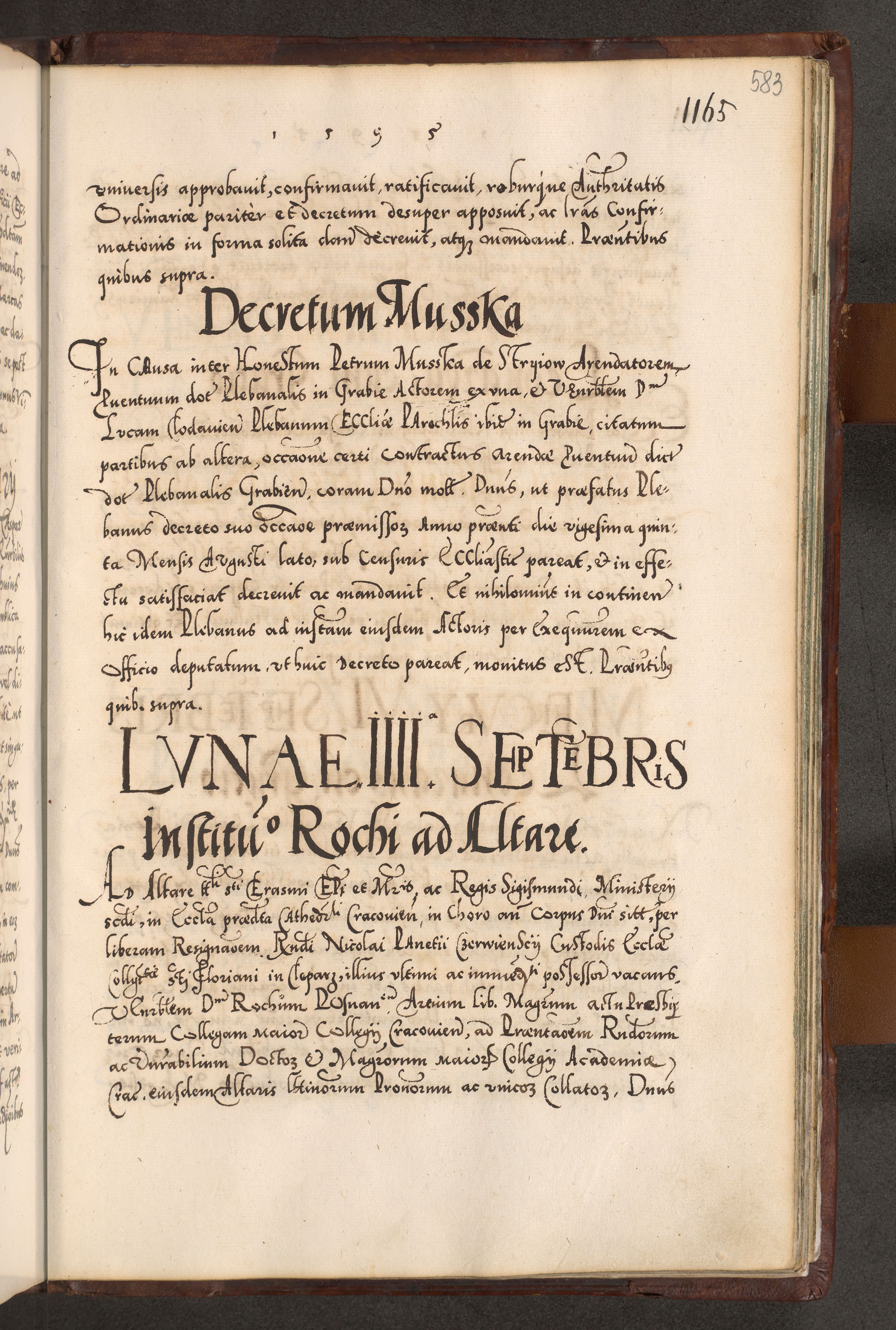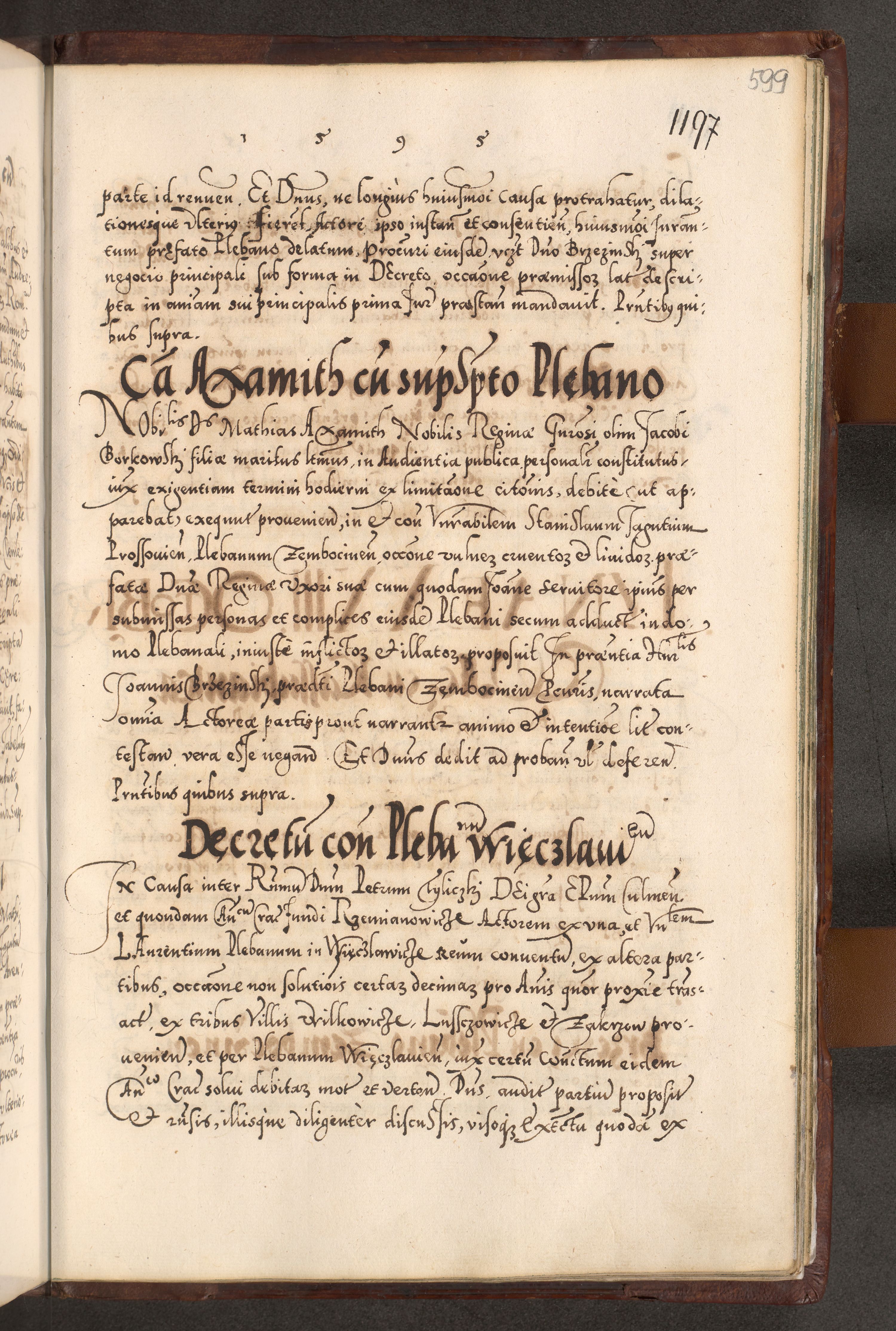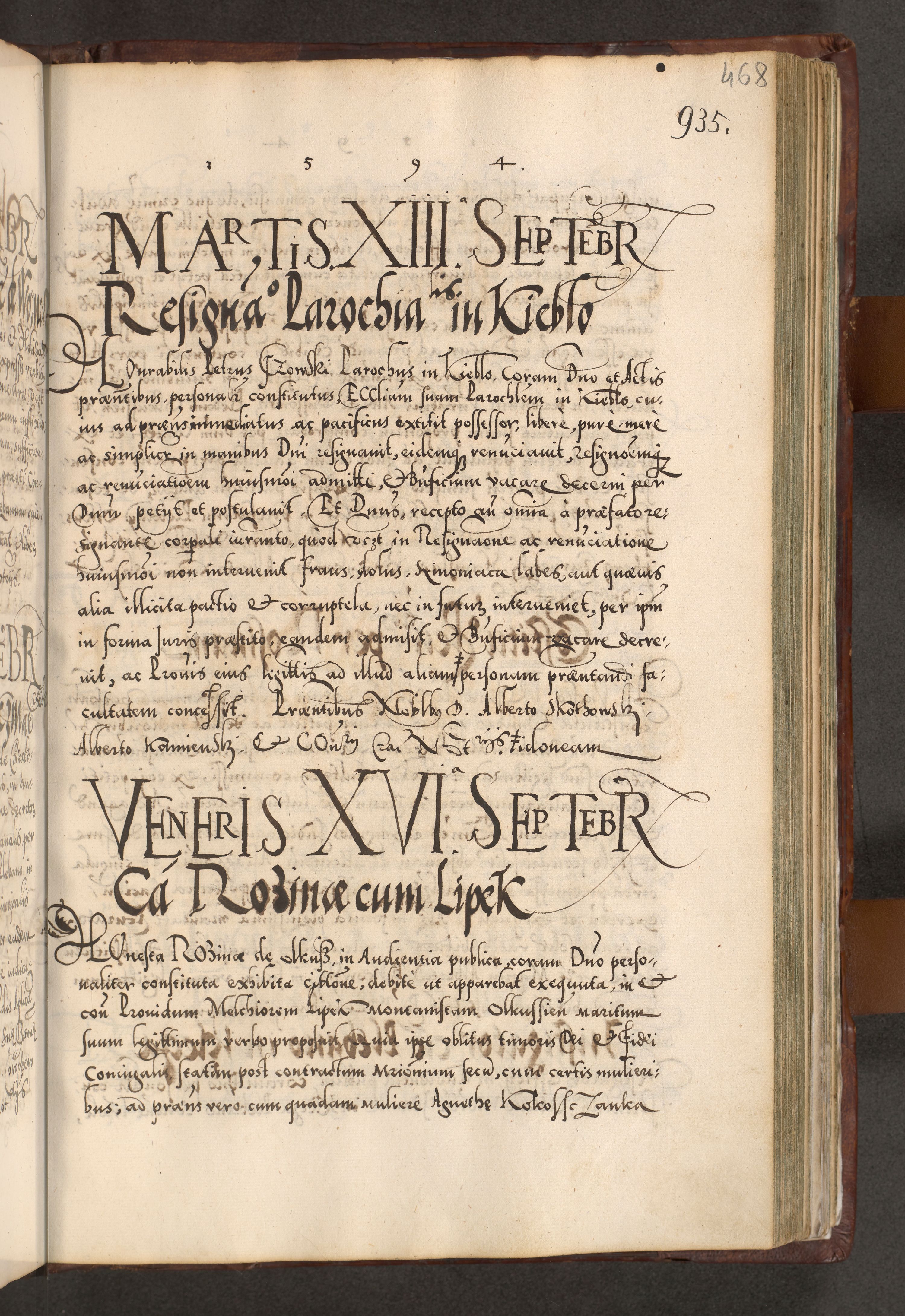 Illistrissimo et revedissimo in Christo Patre Domino Domino Georgio Rzadziwił Miserone Divina Sacrostae R. E. Tituli S. Sixti Presbitero Cardinali Duce in Olyka et Niesswiesz ad Gubernacula Ecclessiae Cracoviensis cuius administratorialem a Sancta Sede Apostolica obtinverat feliciter sedente. Acta actorum, causarum, sententiarum tam deffinitivarum quam interloquutoriarum decretorum, obligationum, quietationum, recognitionum, constitutionum procuratorum etc. coram Reverendo Domino Stanislao Crassinskz de Crasne Archidiacono Cracoviensis, Scholastico Gnesnesis, Custode Plocensis etc. Vicario et Officiali Generali Cracoviensi in Ano Domini Millesimo Quingentesimo Nonagesimo Primo cuius indictio quarta pontificatus SS. Domini Nostri Gregorii XIIII Anno I psius prio feliciter incipiut