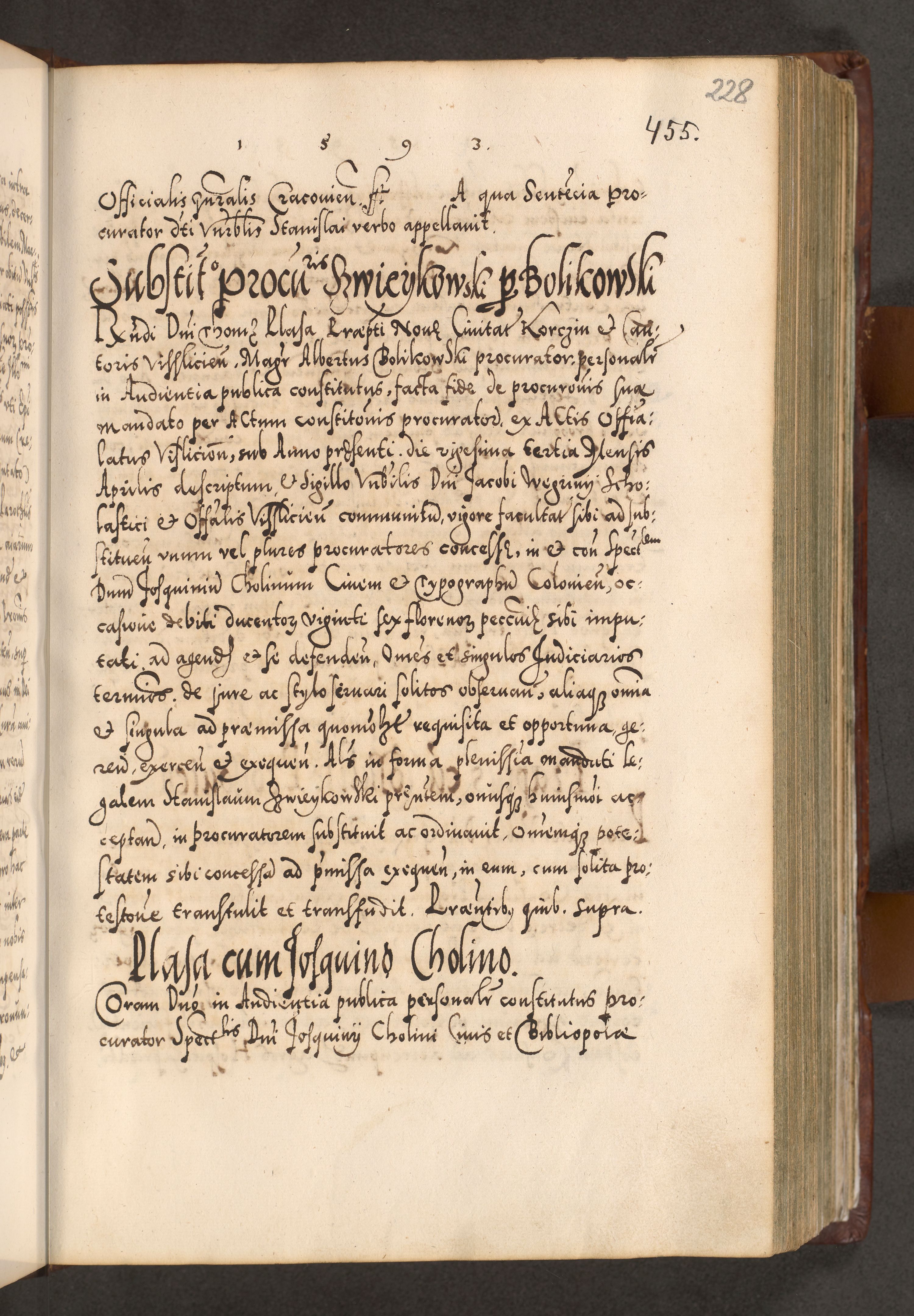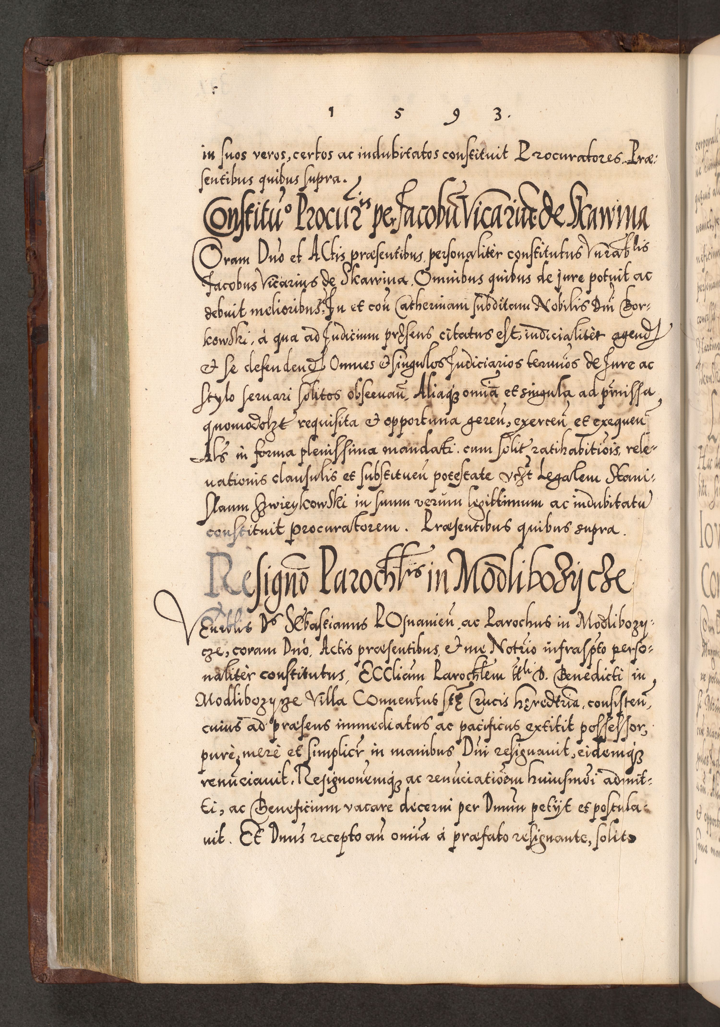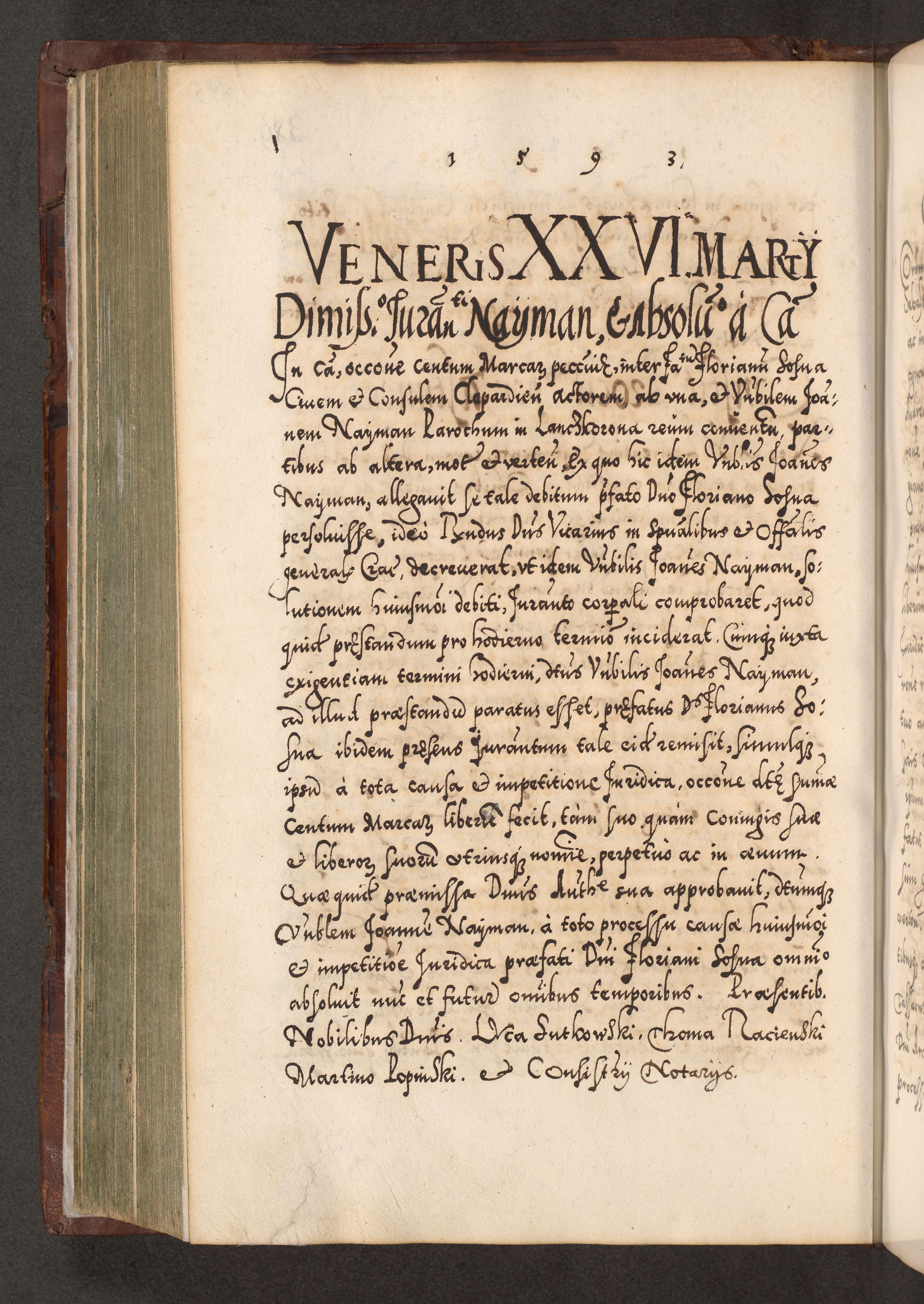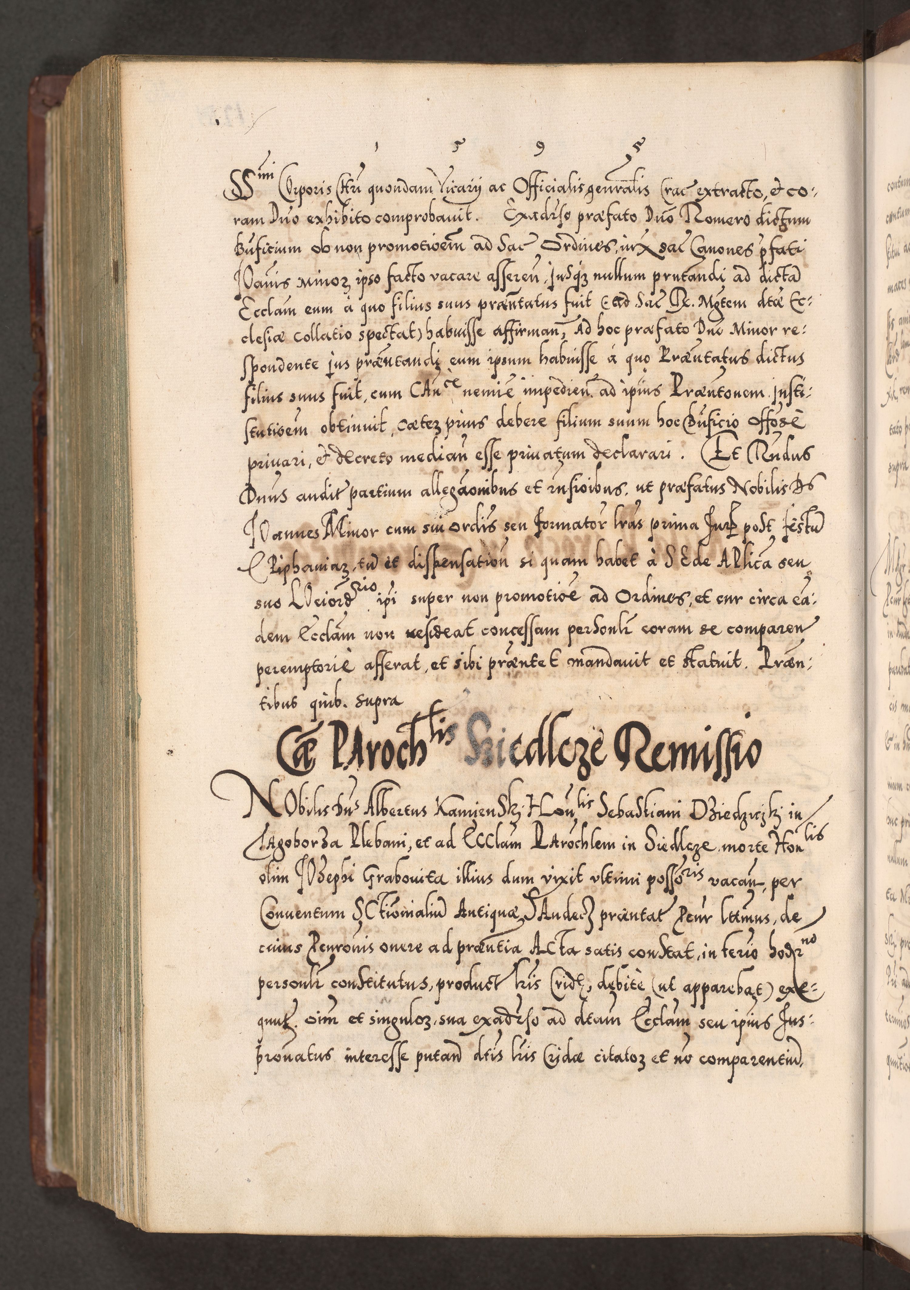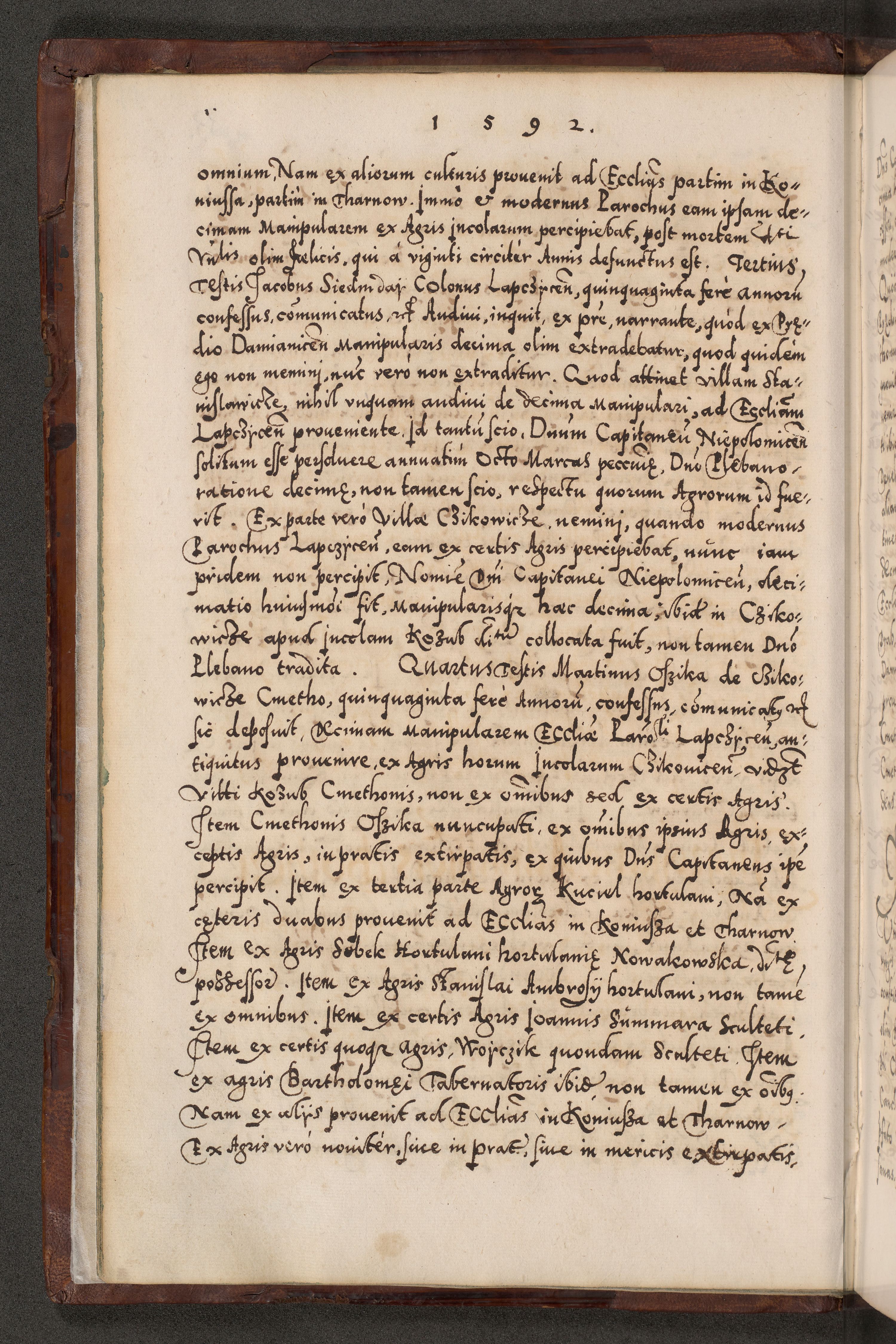 Illistrissimo et revedissimo in Christo Patre Domino Domino Georgio Rzadziwił Miserone Divina Sacrostae R. E. Tituli S. Sixti Presbitero Cardinali Duce in Olyka et Niesswiesz ad Gubernacula Ecclessiae Cracoviensis cuius administratorialem a Sancta Sede Apostolica obtinverat feliciter sedente. Acta actorum, causarum, sententiarum tam deffinitivarum quam interloquutoriarum decretorum, obligationum, quietationum, recognitionum, constitutionum procuratorum etc. coram Reverendo Domino Stanislao Crassinskz de Crasne Archidiacono Cracoviensis, Scholastico Gnesnesis, Custode Plocensis etc. Vicario et Officiali Generali Cracoviensi in Ano Domini Millesimo Quingentesimo Nonagesimo Primo cuius indictio quarta pontificatus SS. Domini Nostri Gregorii XIIII Anno I psius prio feliciter incipiut