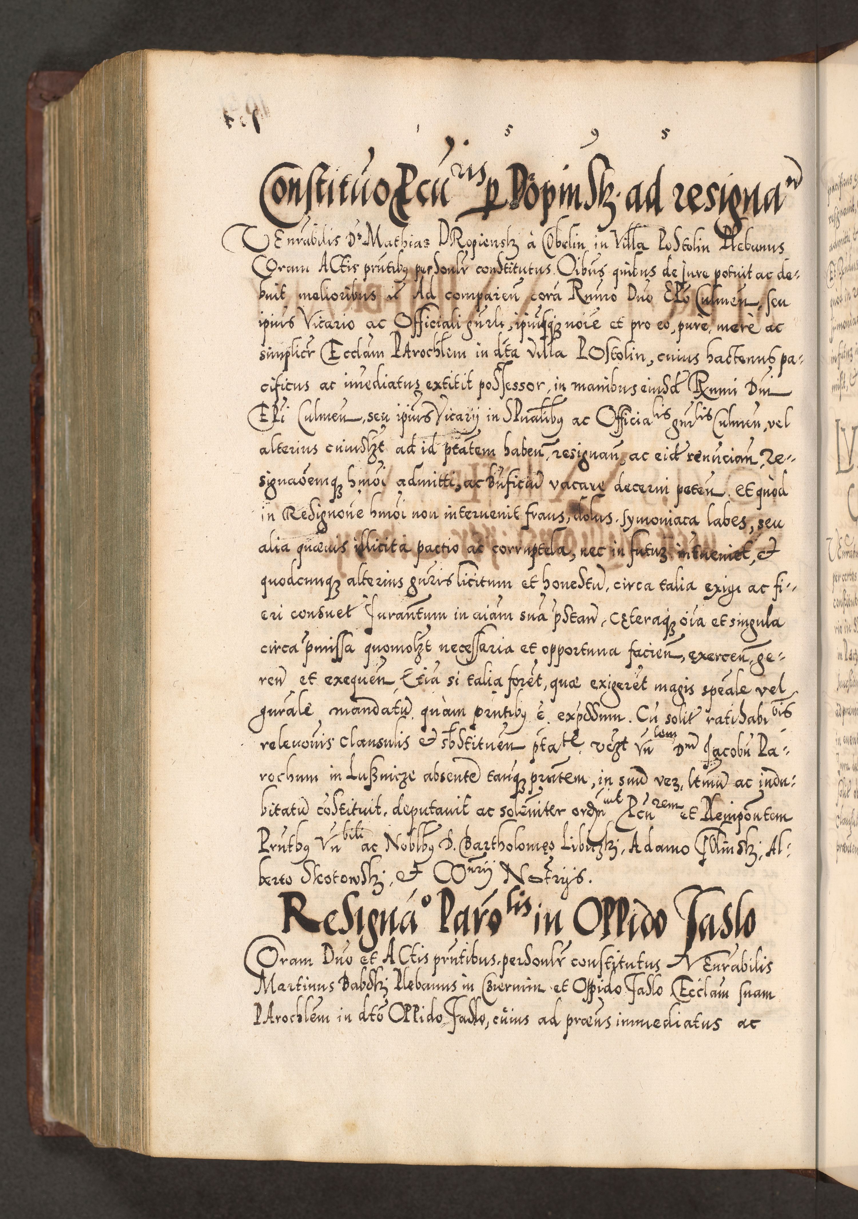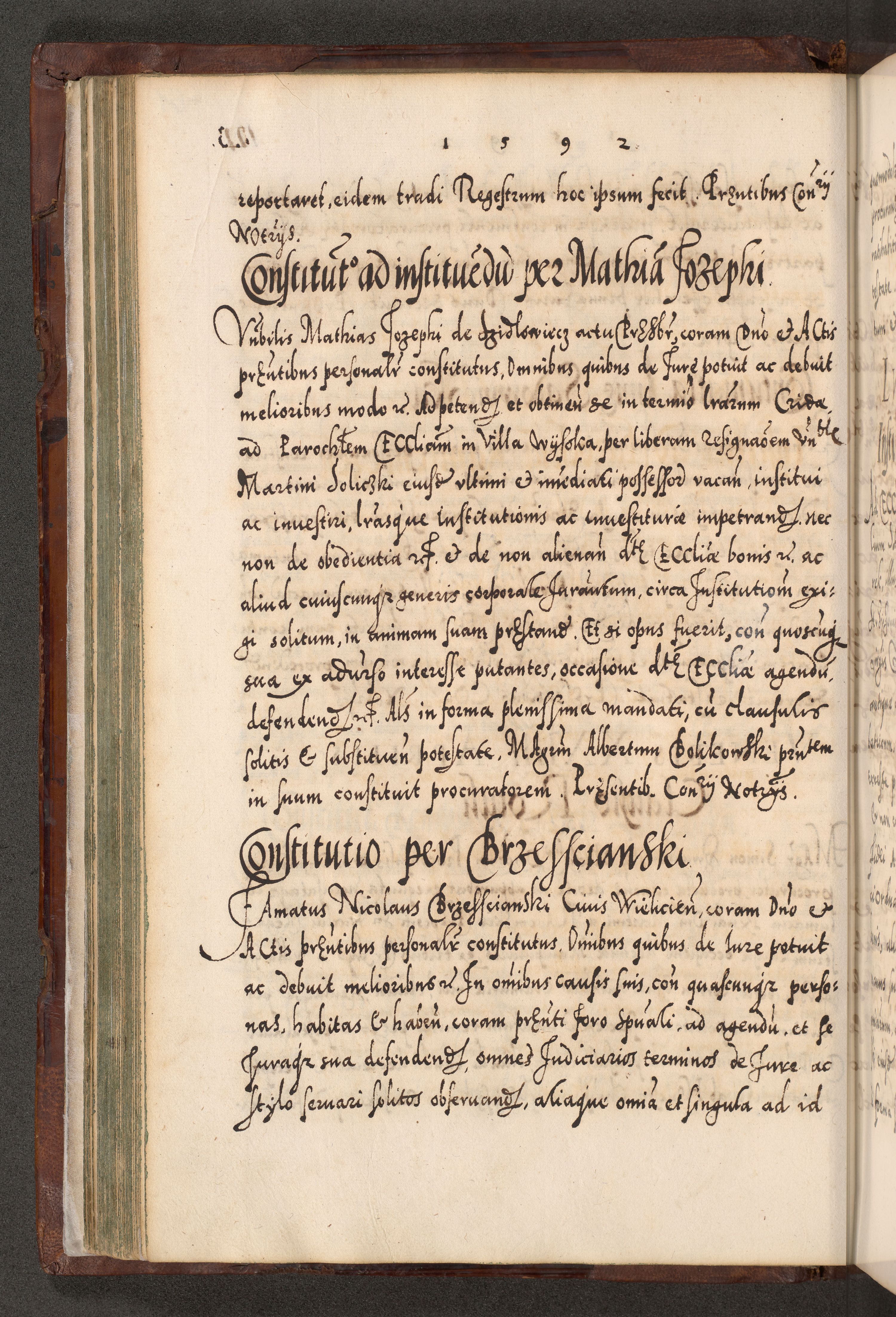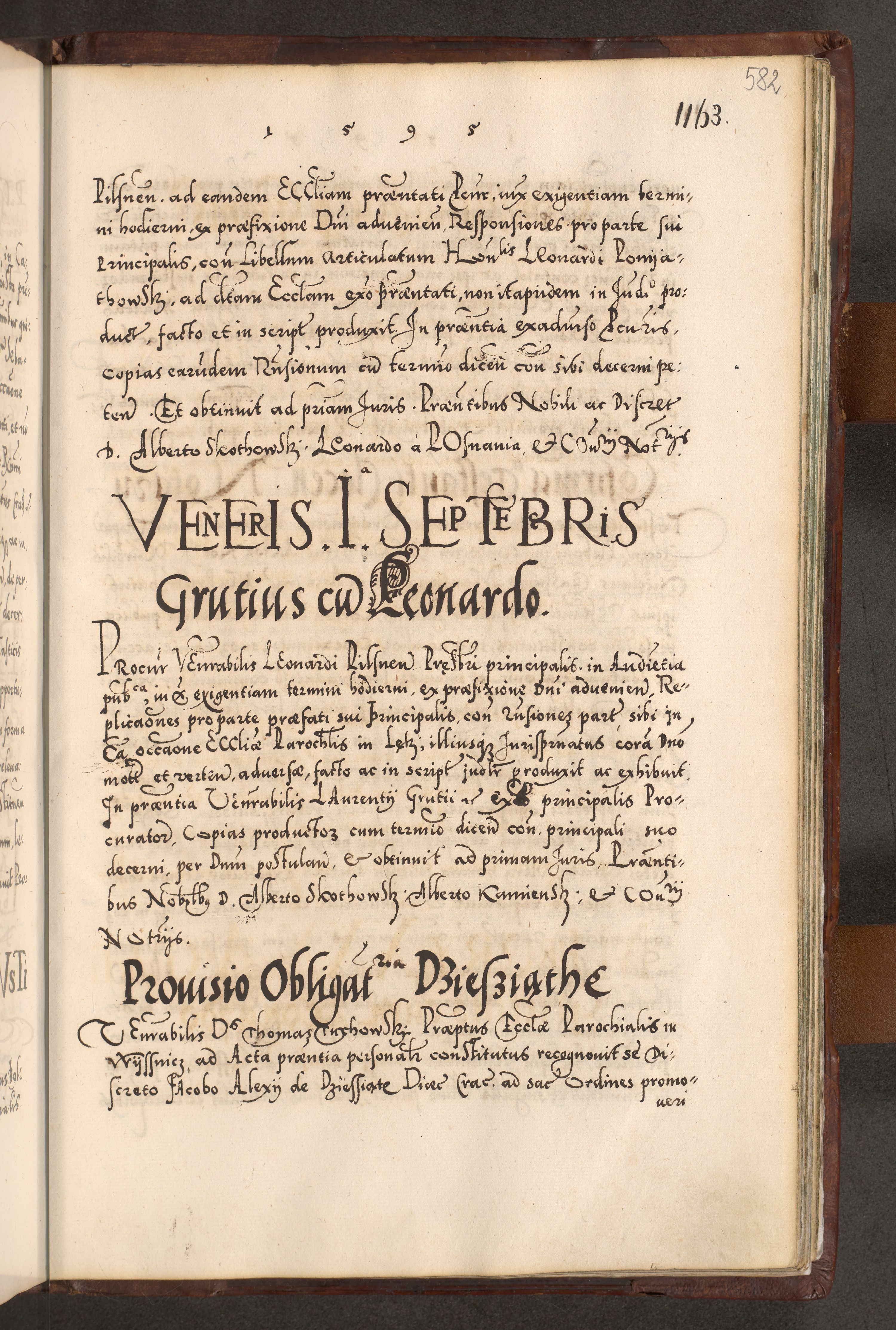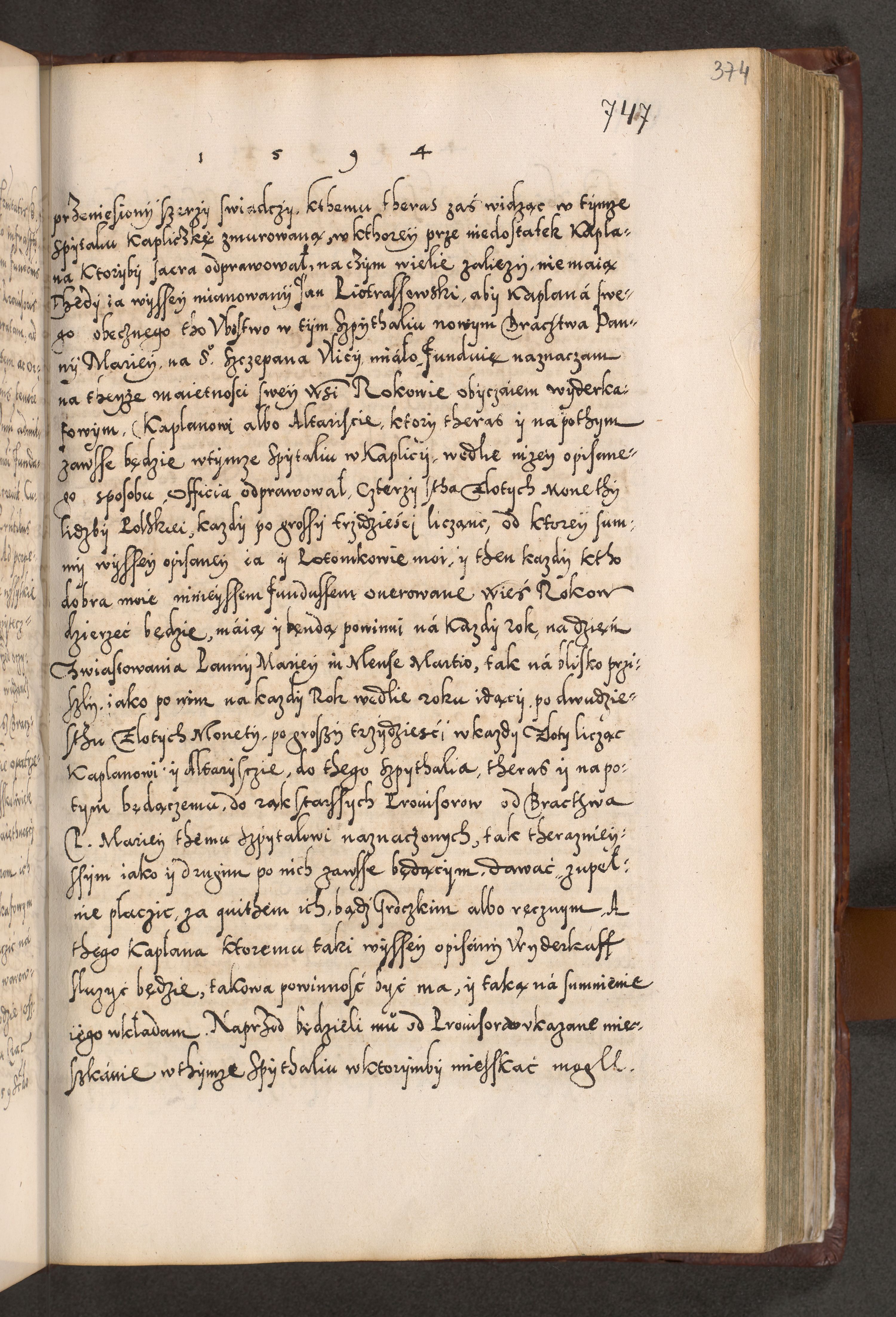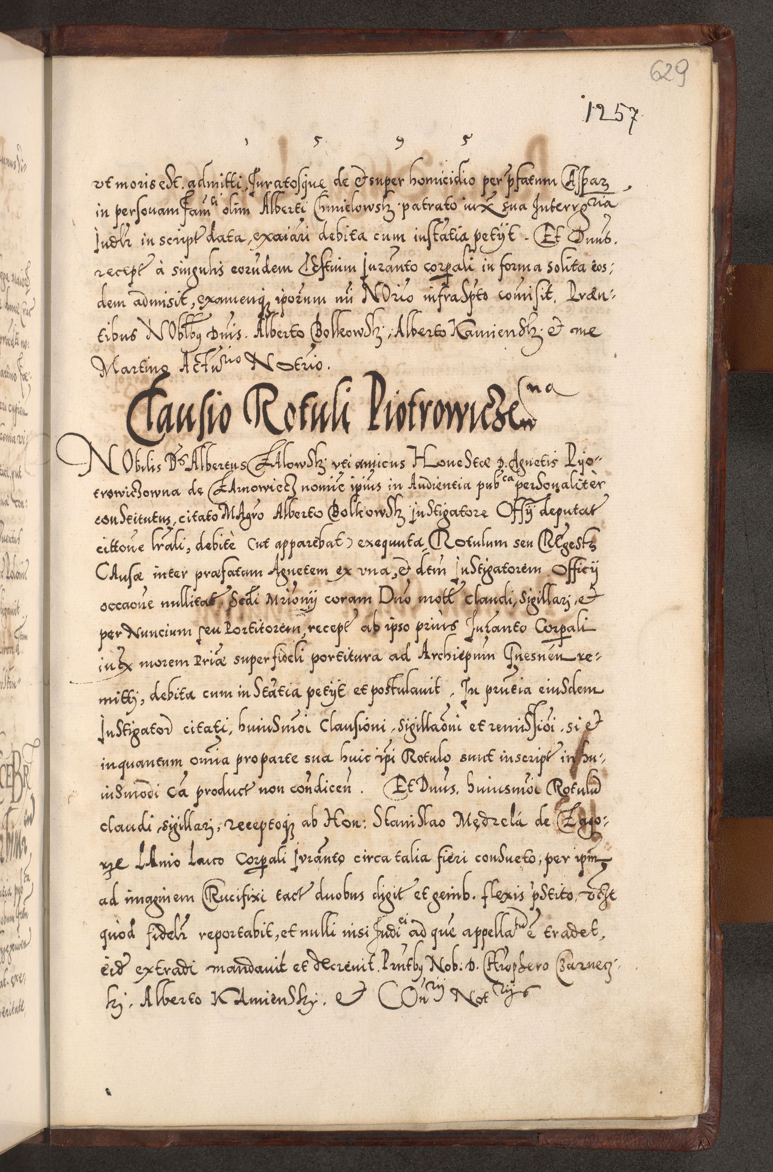 Illistrissimo et revedissimo in Christo Patre Domino Domino Georgio Rzadziwił Miserone Divina Sacrostae R. E. Tituli S. Sixti Presbitero Cardinali Duce in Olyka et Niesswiesz ad Gubernacula Ecclessiae Cracoviensis cuius administratorialem a Sancta Sede Apostolica obtinverat feliciter sedente. Acta actorum, causarum, sententiarum tam deffinitivarum quam interloquutoriarum decretorum, obligationum, quietationum, recognitionum, constitutionum procuratorum etc. coram Reverendo Domino Stanislao Crassinskz de Crasne Archidiacono Cracoviensis, Scholastico Gnesnesis, Custode Plocensis etc. Vicario et Officiali Generali Cracoviensi in Ano Domini Millesimo Quingentesimo Nonagesimo Primo cuius indictio quarta pontificatus SS. Domini Nostri Gregorii XIIII Anno I psius prio feliciter incipiut