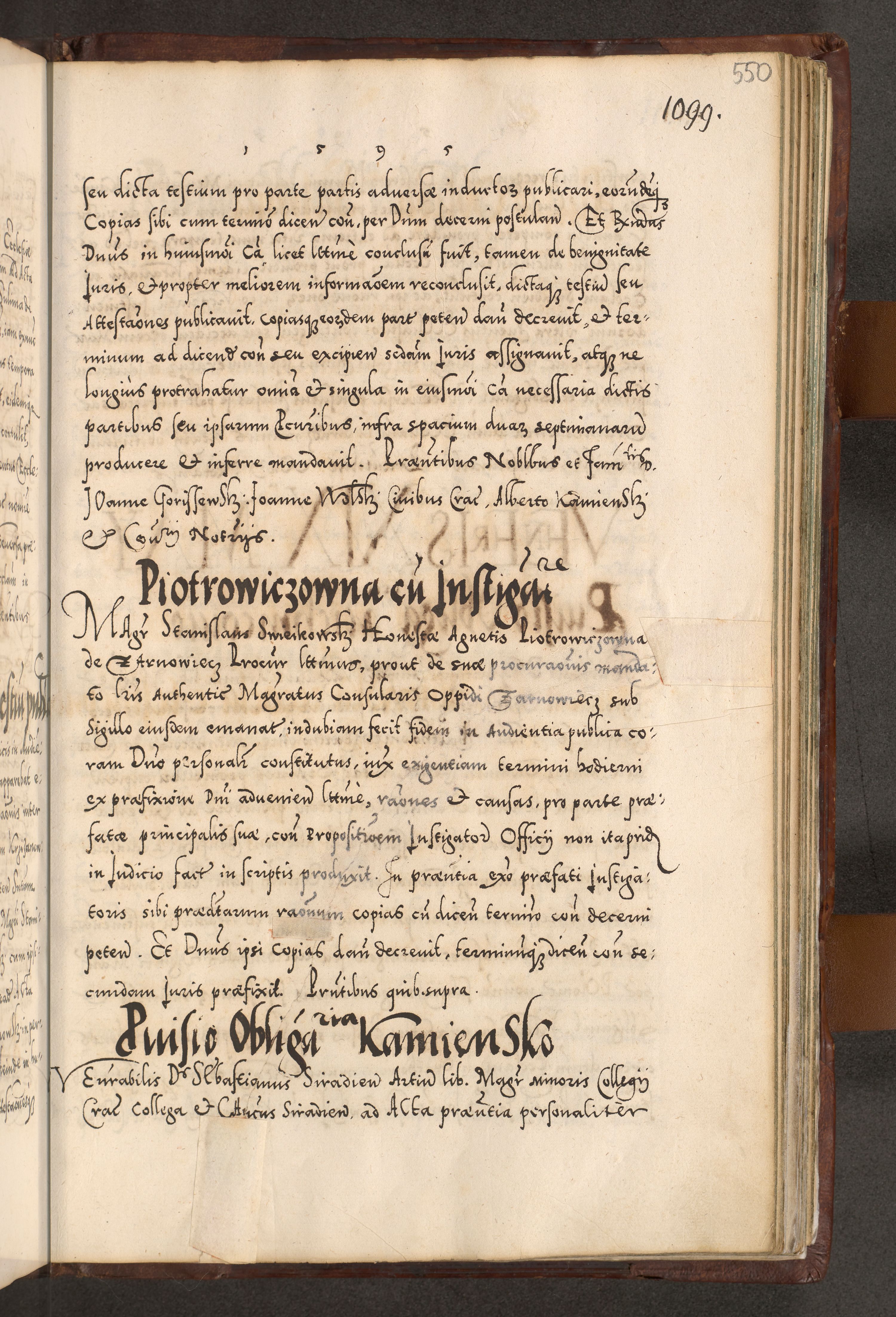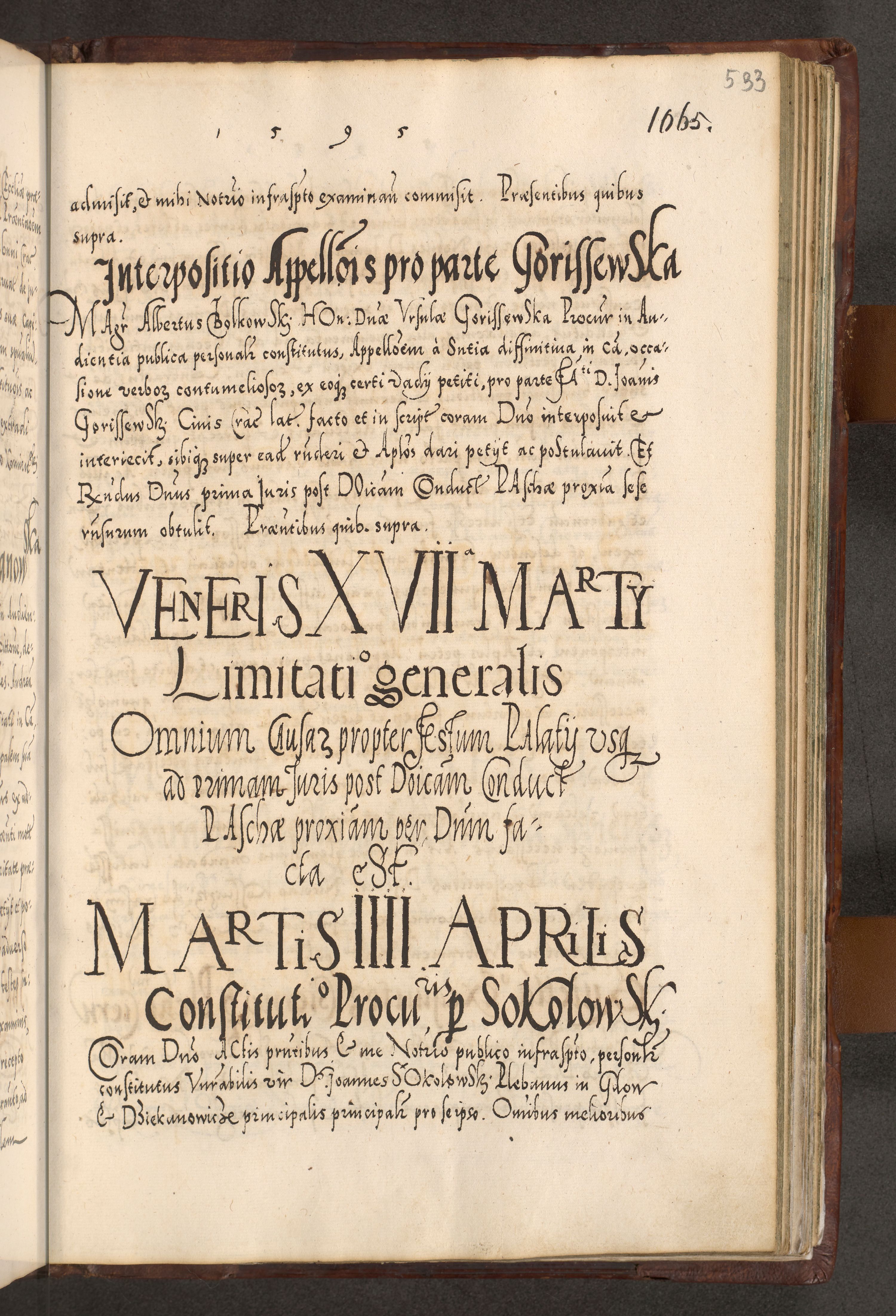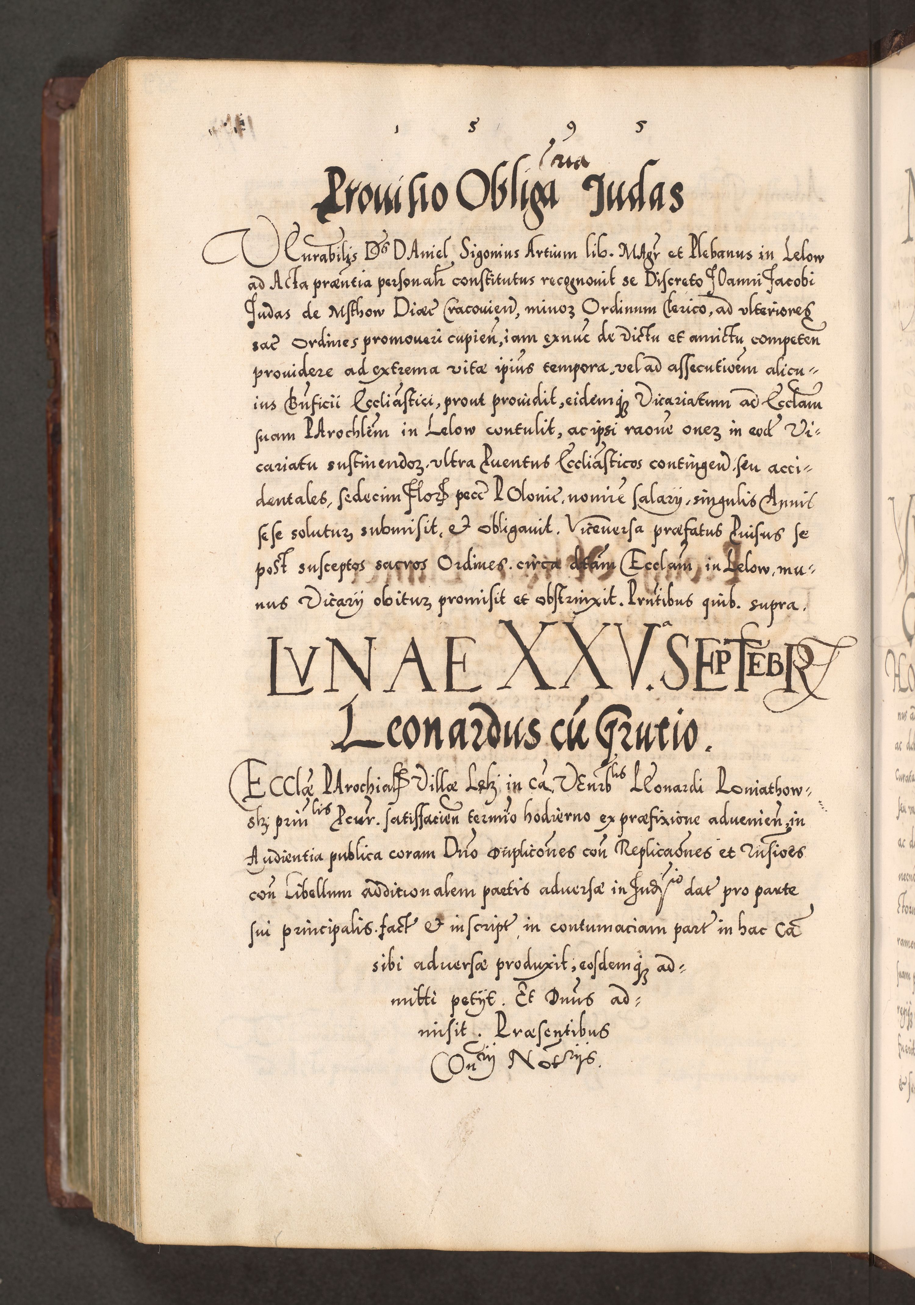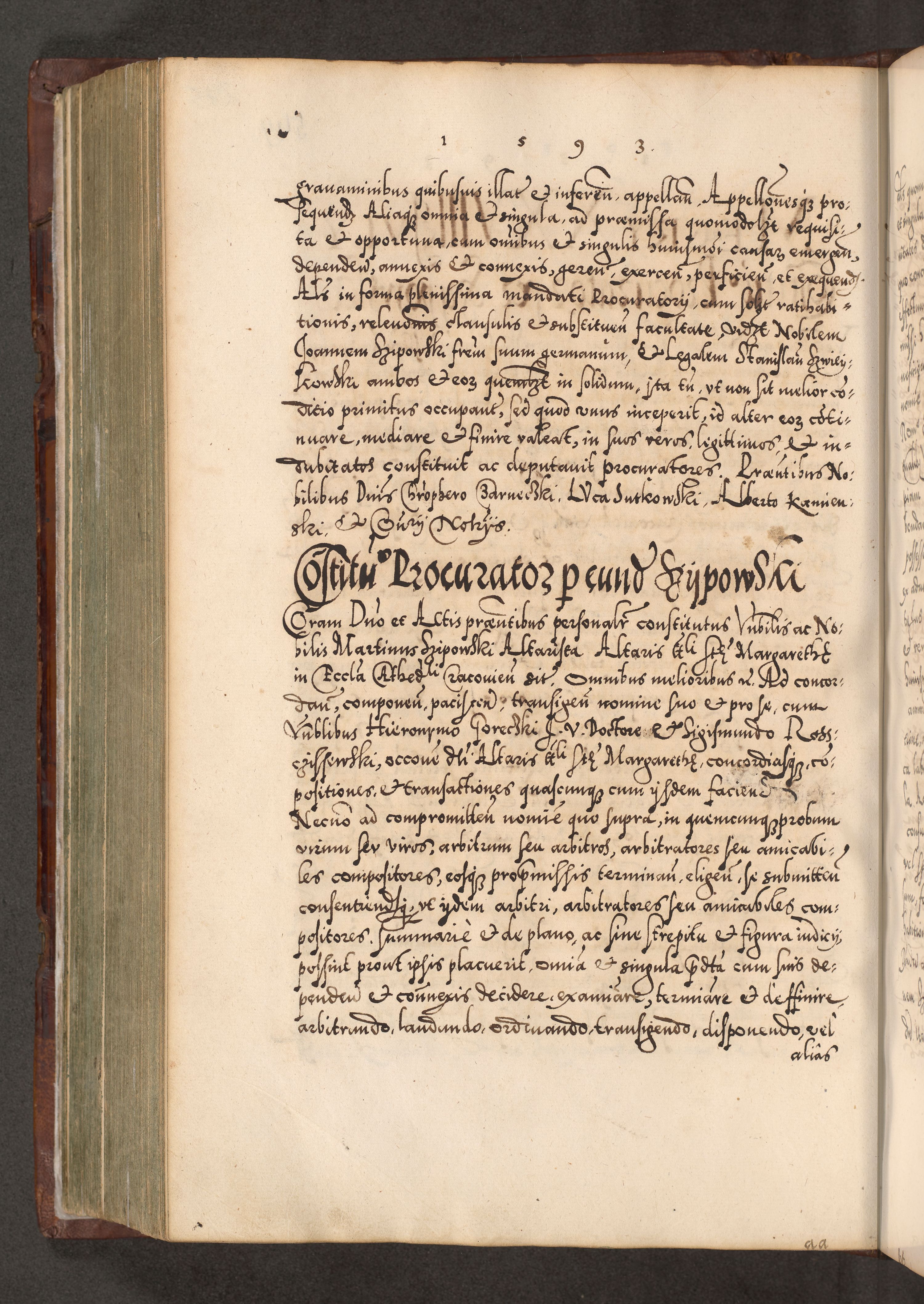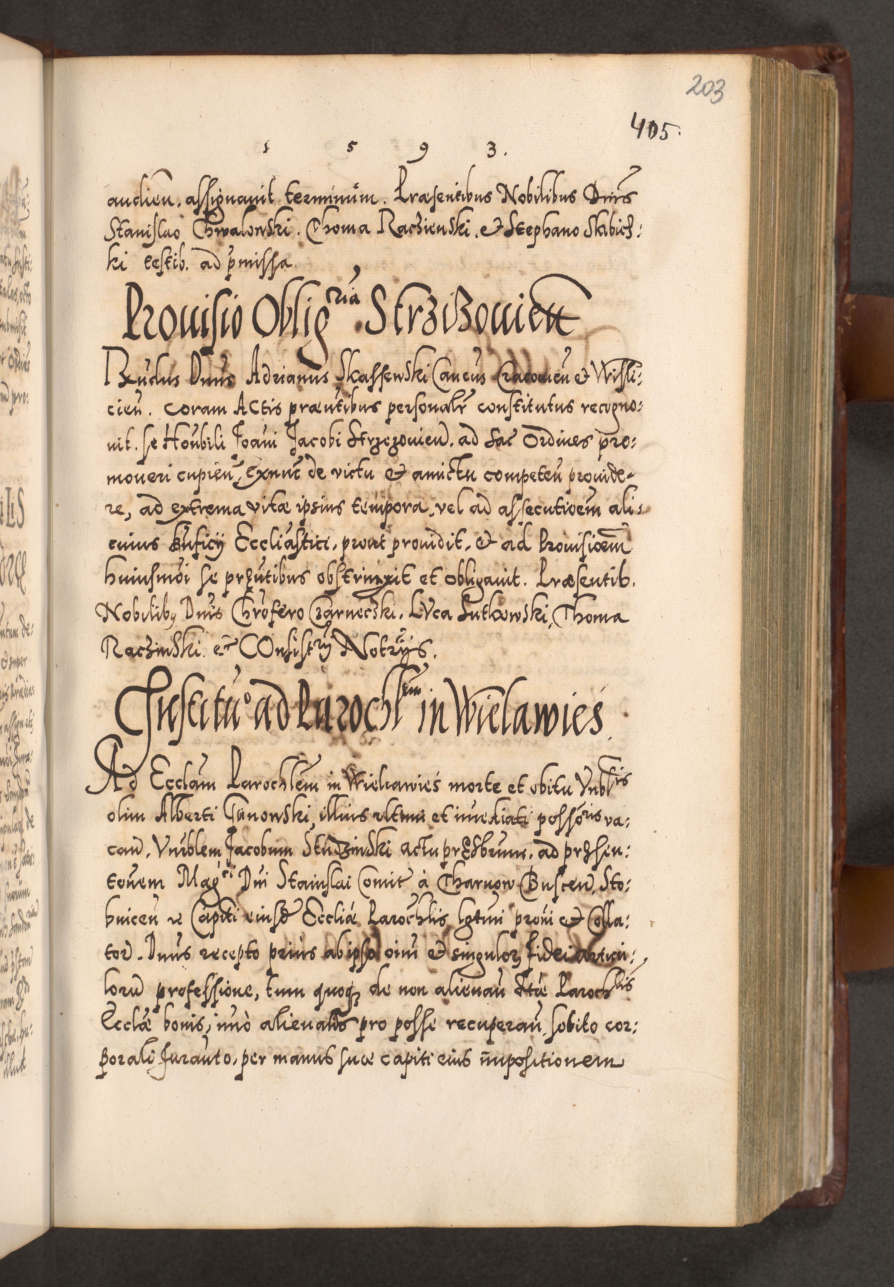 Illistrissimo et revedissimo in Christo Patre Domino Domino Georgio Rzadziwił Miserone Divina Sacrostae R. E. Tituli S. Sixti Presbitero Cardinali Duce in Olyka et Niesswiesz ad Gubernacula Ecclessiae Cracoviensis cuius administratorialem a Sancta Sede Apostolica obtinverat feliciter sedente. Acta actorum, causarum, sententiarum tam deffinitivarum quam interloquutoriarum decretorum, obligationum, quietationum, recognitionum, constitutionum procuratorum etc. coram Reverendo Domino Stanislao Crassinskz de Crasne Archidiacono Cracoviensis, Scholastico Gnesnesis, Custode Plocensis etc. Vicario et Officiali Generali Cracoviensi in Ano Domini Millesimo Quingentesimo Nonagesimo Primo cuius indictio quarta pontificatus SS. Domini Nostri Gregorii XIIII Anno I psius prio feliciter incipiut