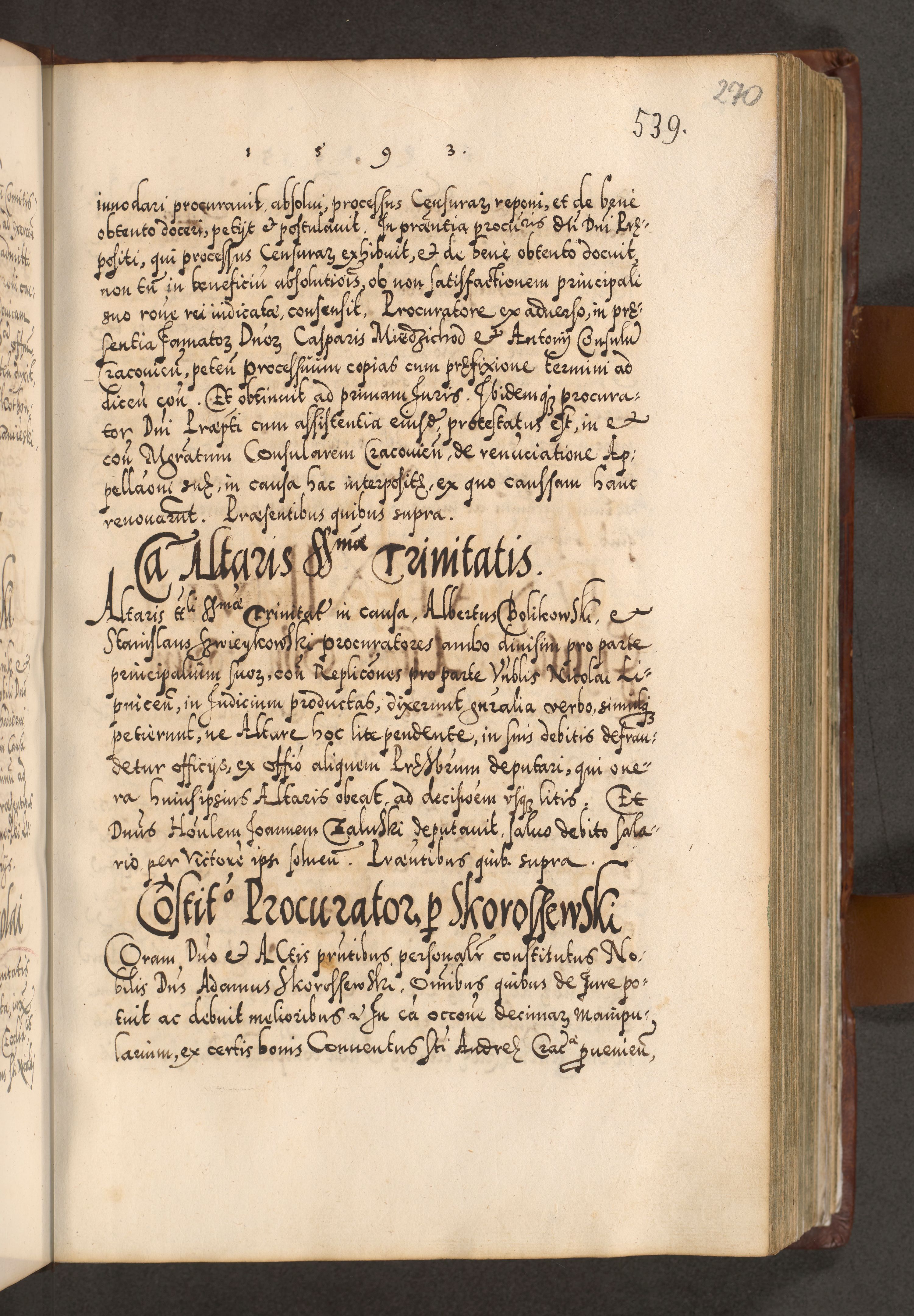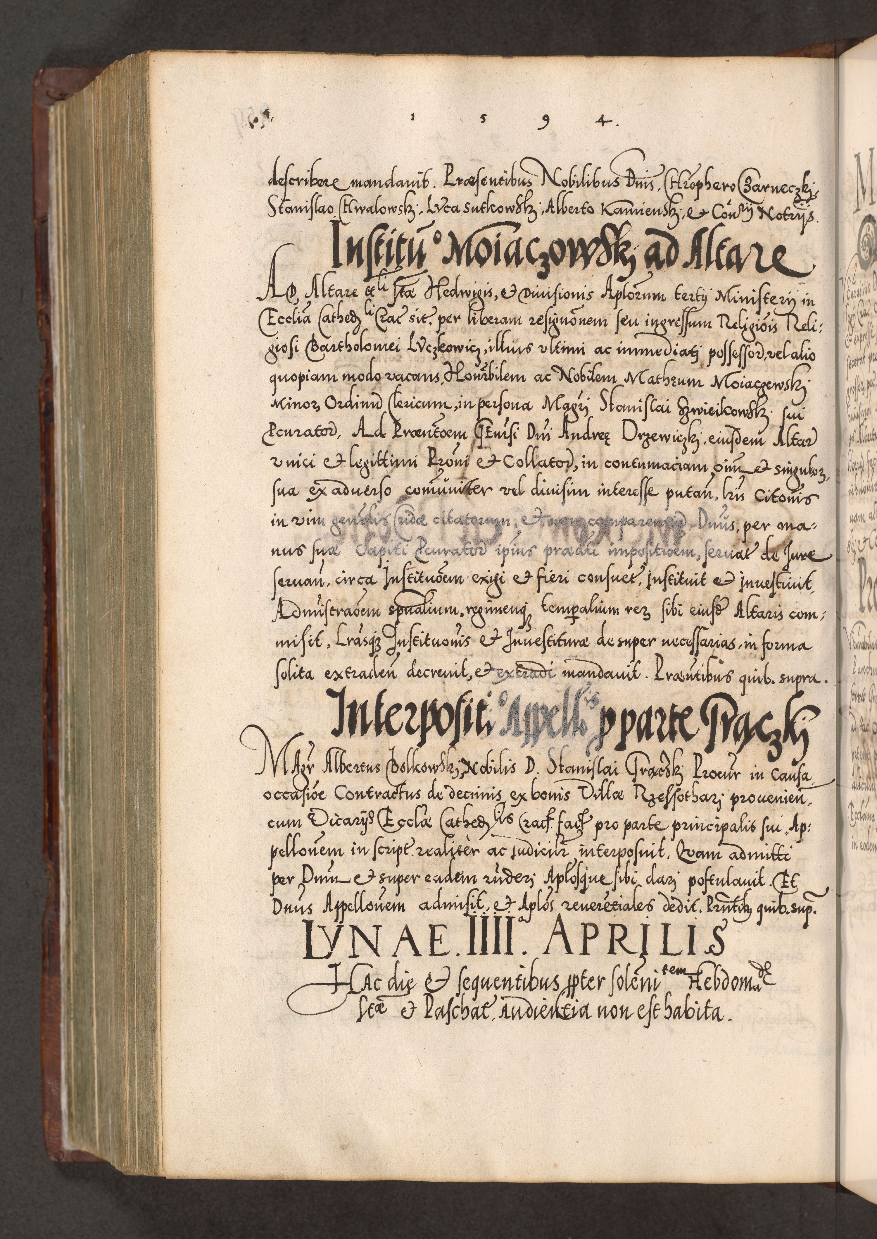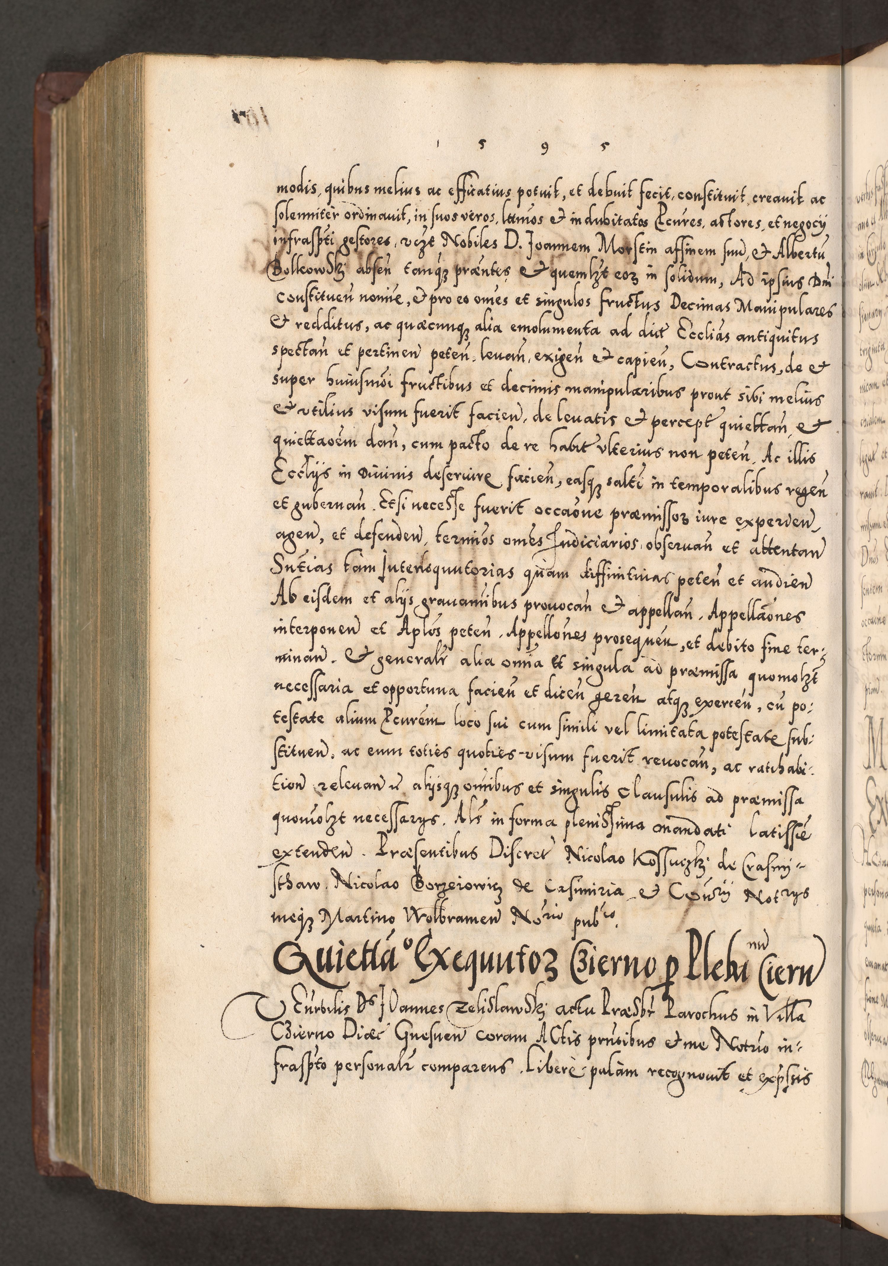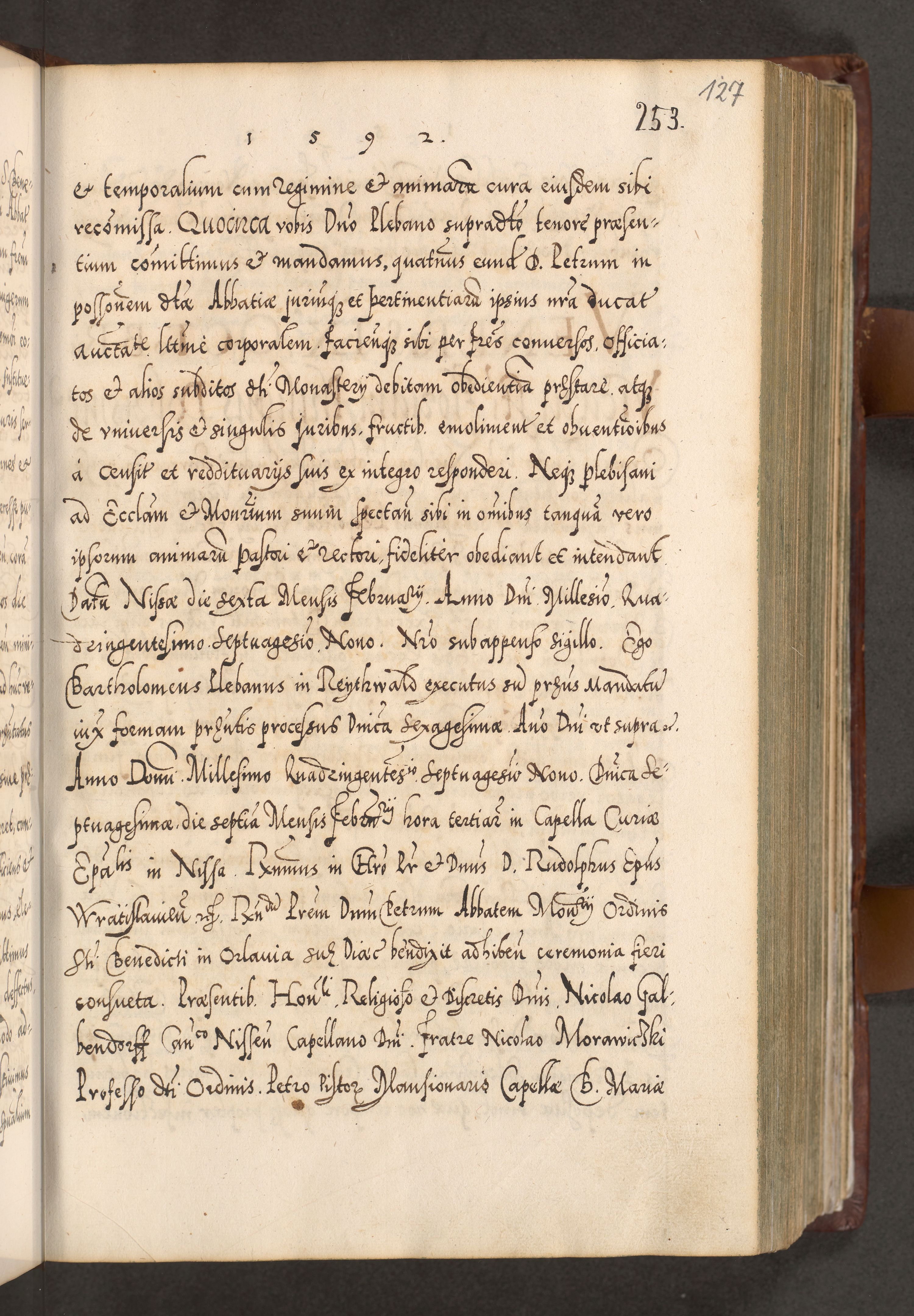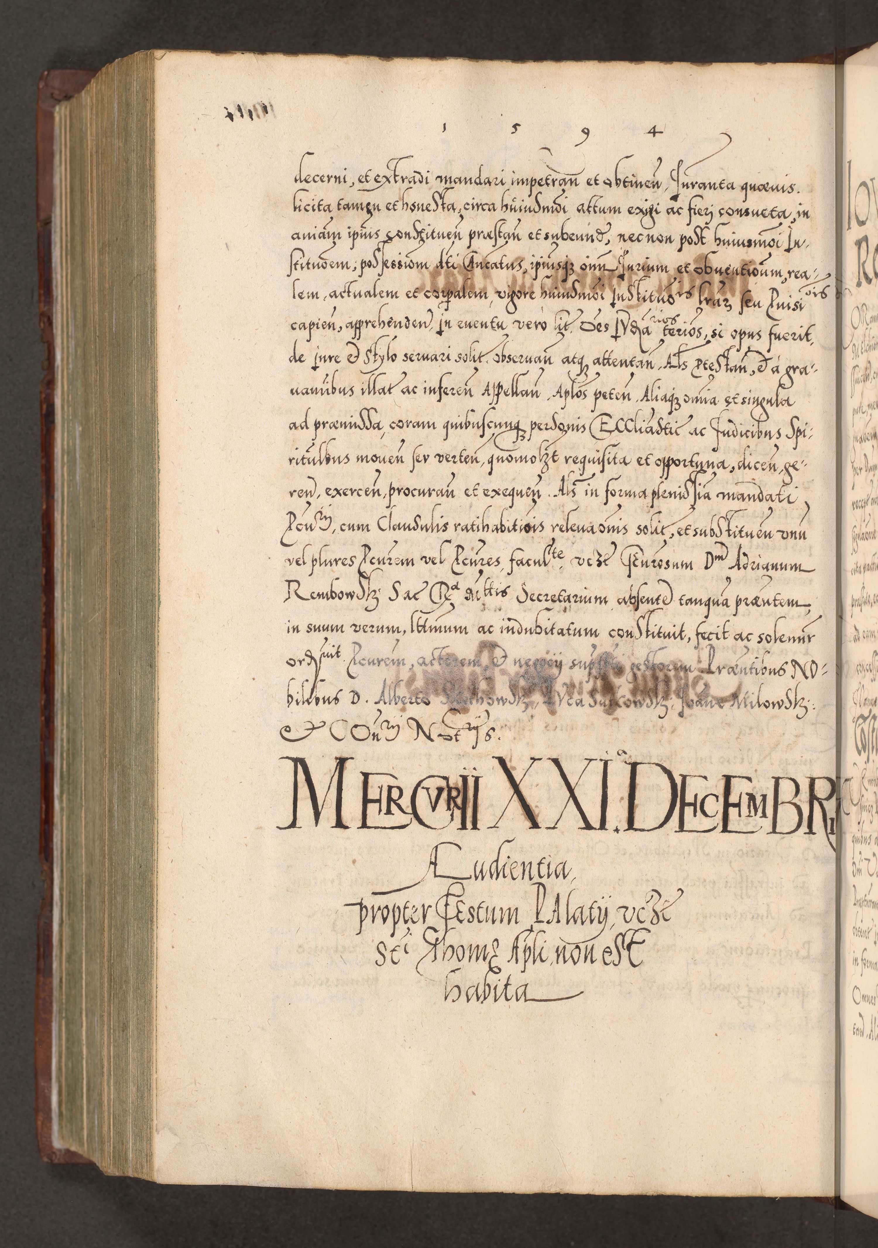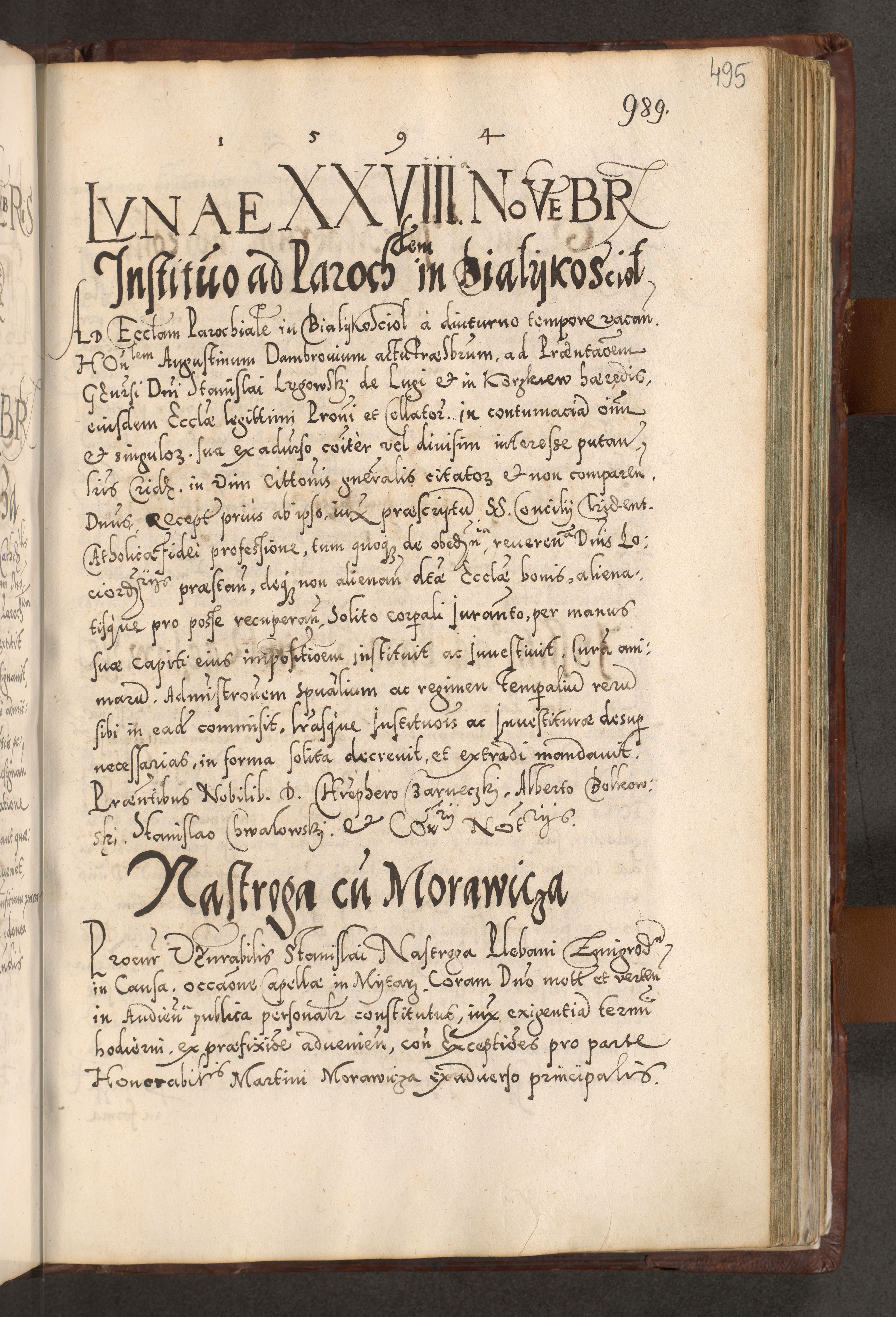 Illistrissimo et revedissimo in Christo Patre Domino Domino Georgio Rzadziwił Miserone Divina Sacrostae R. E. Tituli S. Sixti Presbitero Cardinali Duce in Olyka et Niesswiesz ad Gubernacula Ecclessiae Cracoviensis cuius administratorialem a Sancta Sede Apostolica obtinverat feliciter sedente. Acta actorum, causarum, sententiarum tam deffinitivarum quam interloquutoriarum decretorum, obligationum, quietationum, recognitionum, constitutionum procuratorum etc. coram Reverendo Domino Stanislao Crassinskz de Crasne Archidiacono Cracoviensis, Scholastico Gnesnesis, Custode Plocensis etc. Vicario et Officiali Generali Cracoviensi in Ano Domini Millesimo Quingentesimo Nonagesimo Primo cuius indictio quarta pontificatus SS. Domini Nostri Gregorii XIIII Anno I psius prio feliciter incipiut