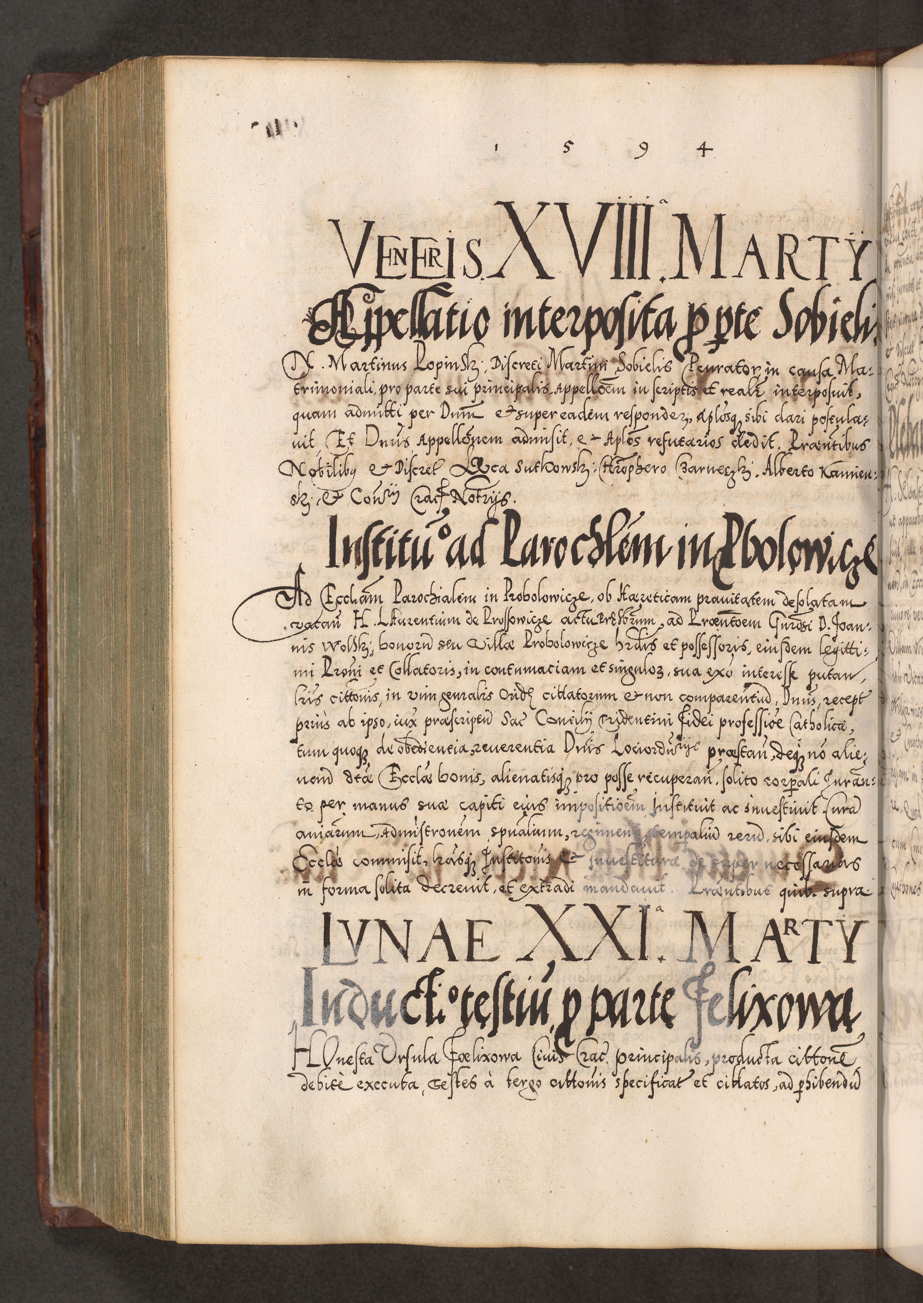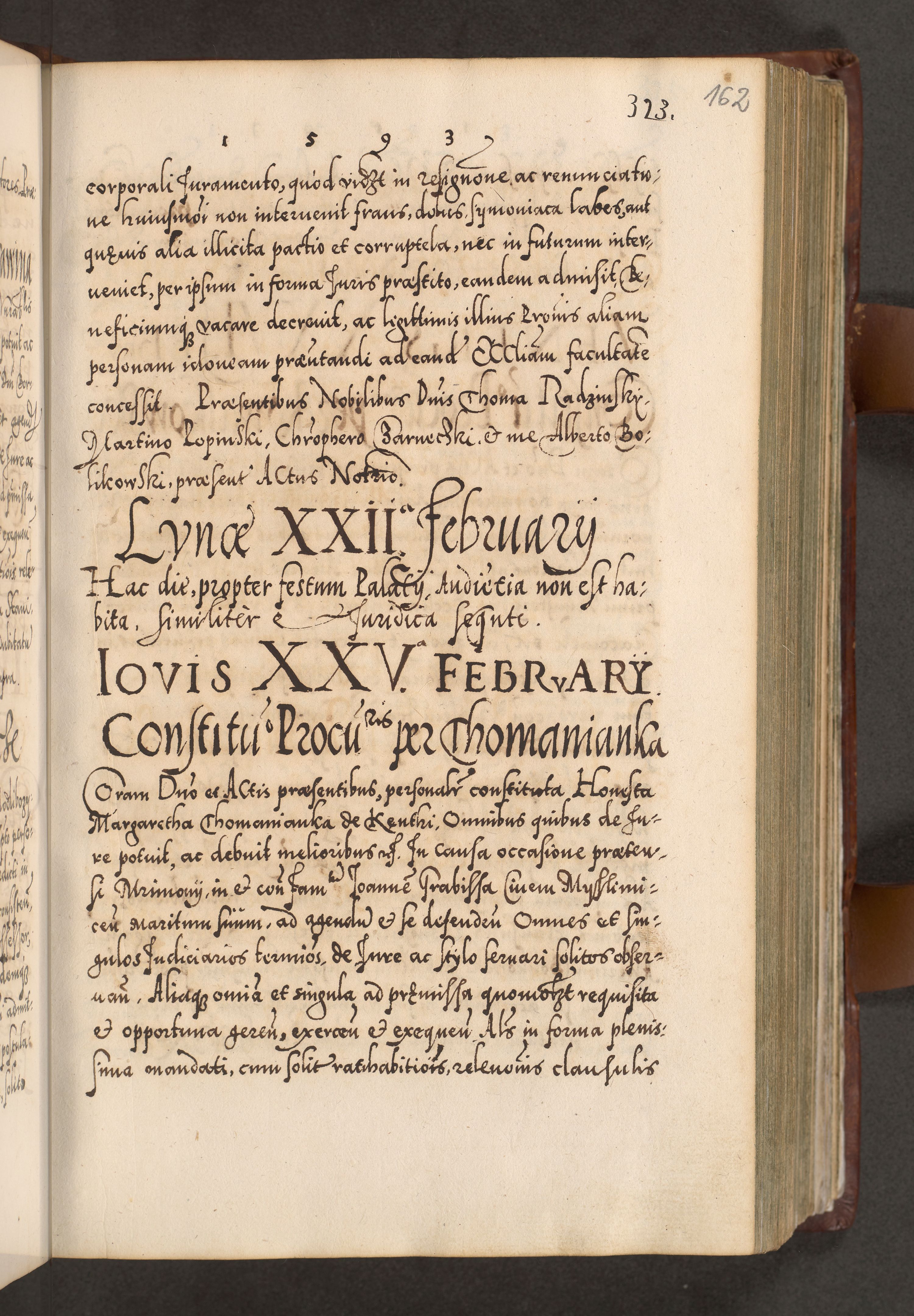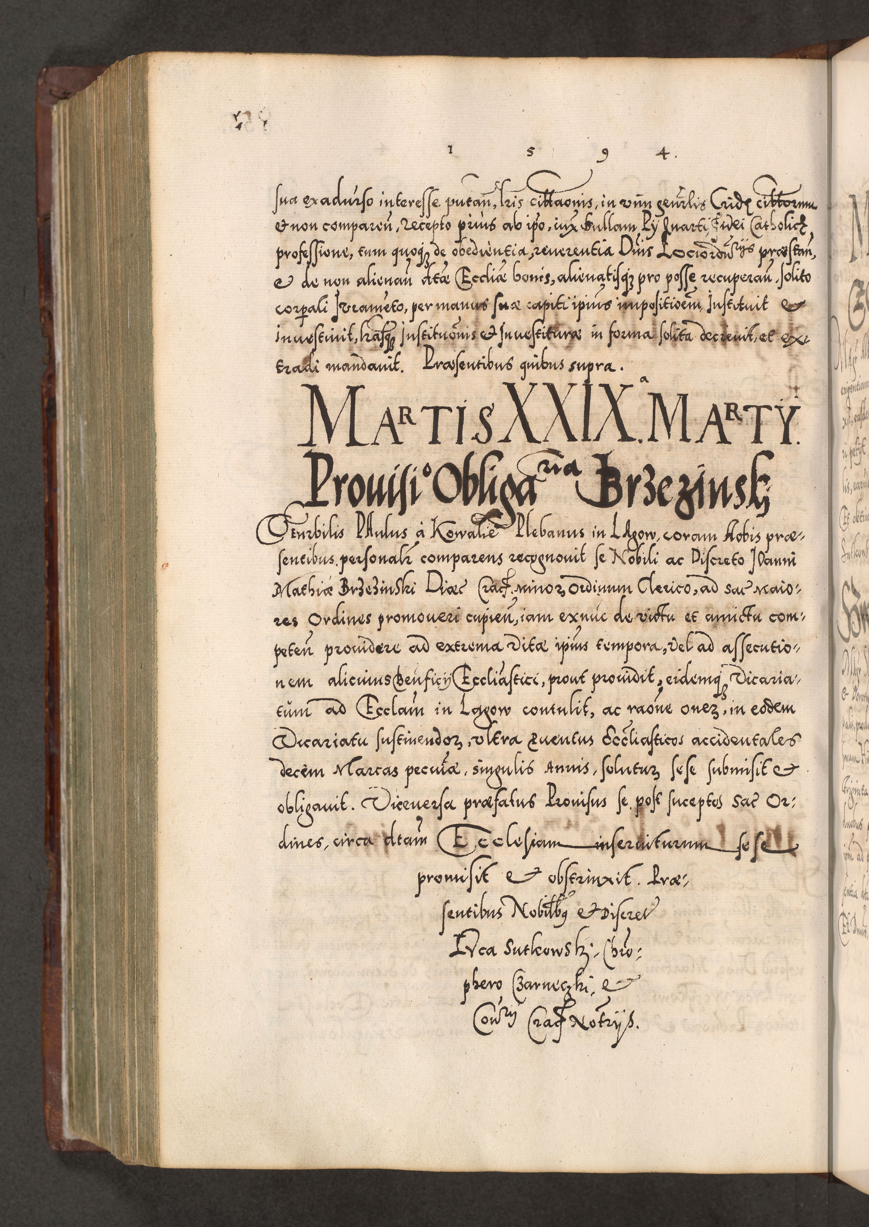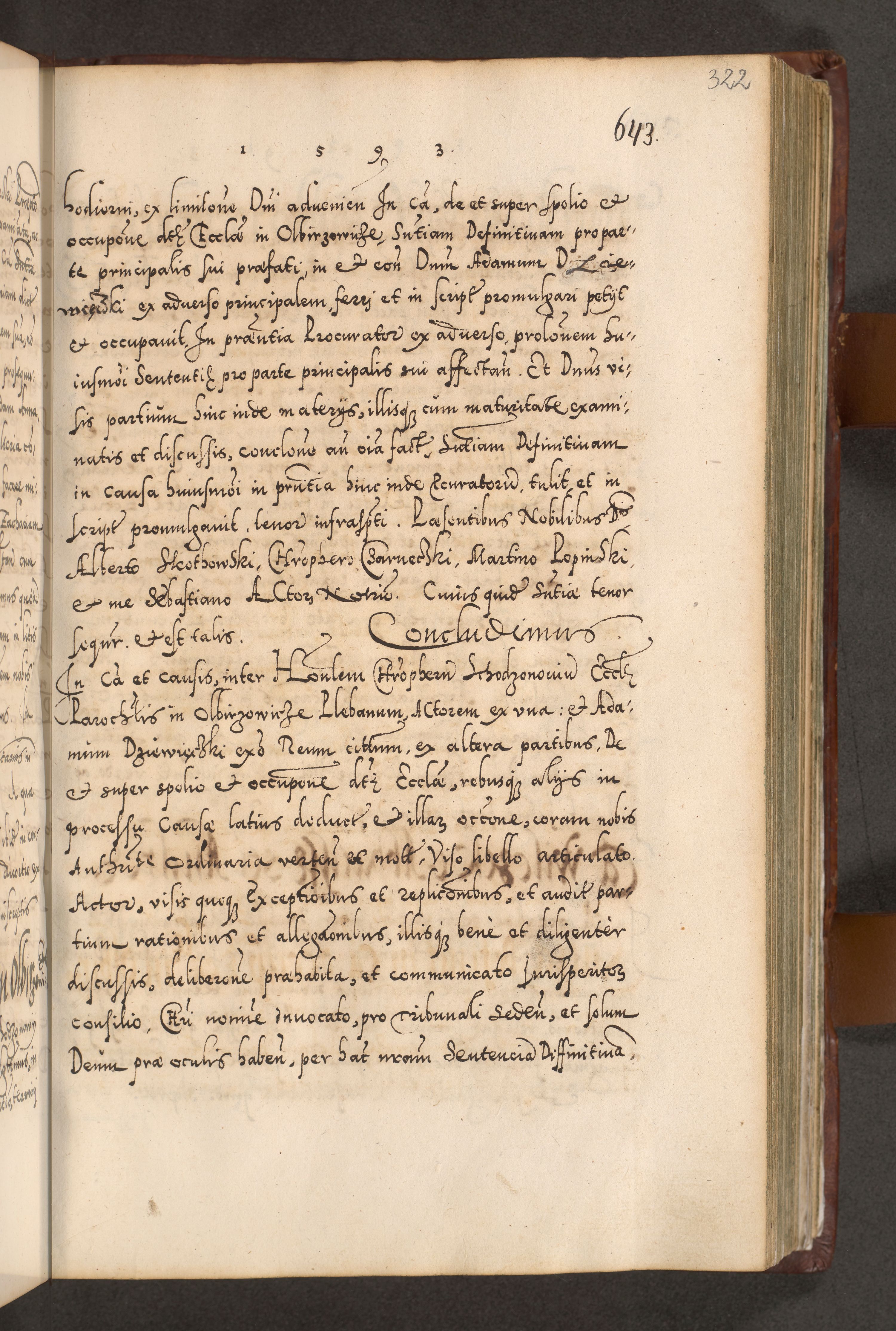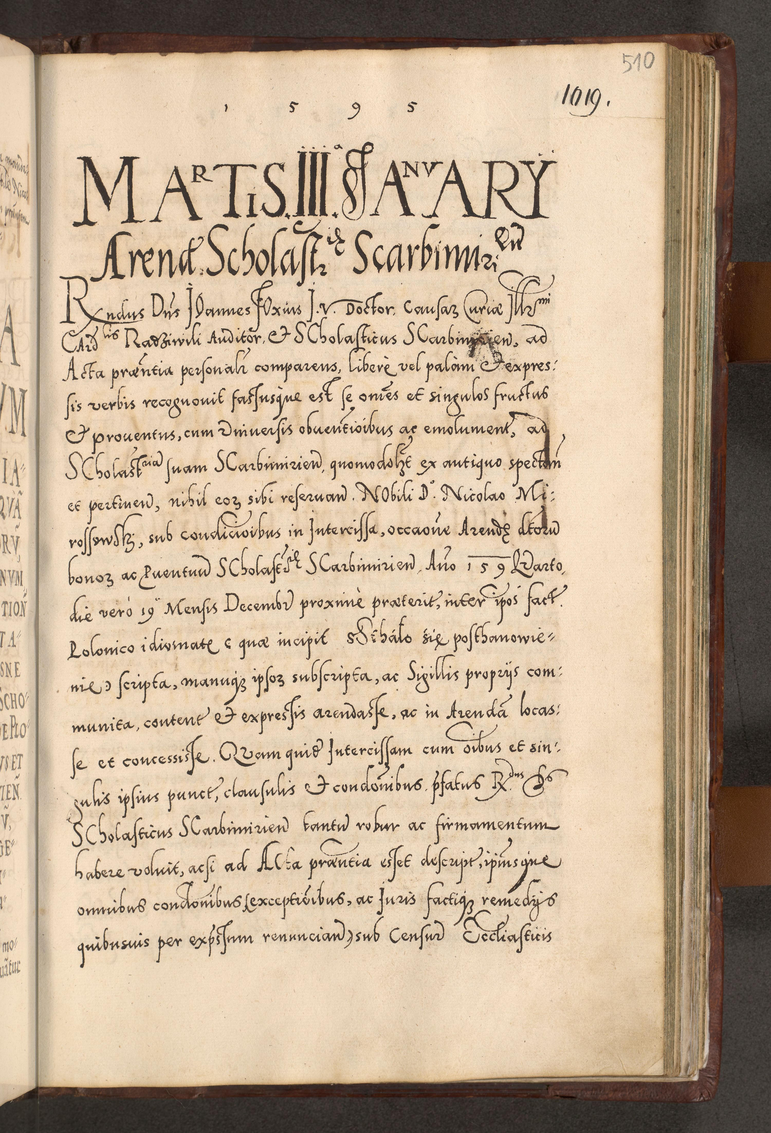 Illistrissimo et revedissimo in Christo Patre Domino Domino Georgio Rzadziwił Miserone Divina Sacrostae R. E. Tituli S. Sixti Presbitero Cardinali Duce in Olyka et Niesswiesz ad Gubernacula Ecclessiae Cracoviensis cuius administratorialem a Sancta Sede Apostolica obtinverat feliciter sedente. Acta actorum, causarum, sententiarum tam deffinitivarum quam interloquutoriarum decretorum, obligationum, quietationum, recognitionum, constitutionum procuratorum etc. coram Reverendo Domino Stanislao Crassinskz de Crasne Archidiacono Cracoviensis, Scholastico Gnesnesis, Custode Plocensis etc. Vicario et Officiali Generali Cracoviensi in Ano Domini Millesimo Quingentesimo Nonagesimo Primo cuius indictio quarta pontificatus SS. Domini Nostri Gregorii XIIII Anno I psius prio feliciter incipiut