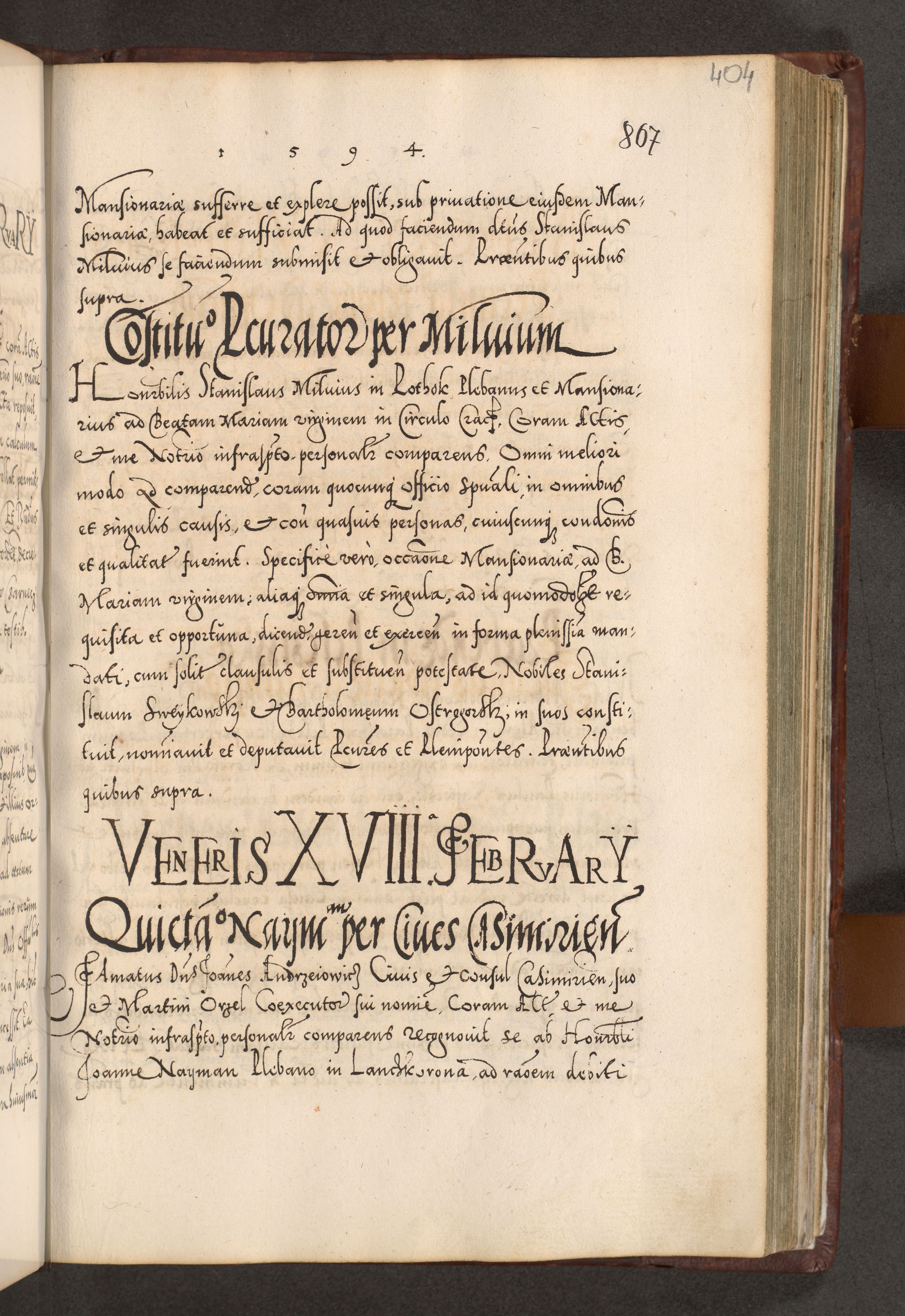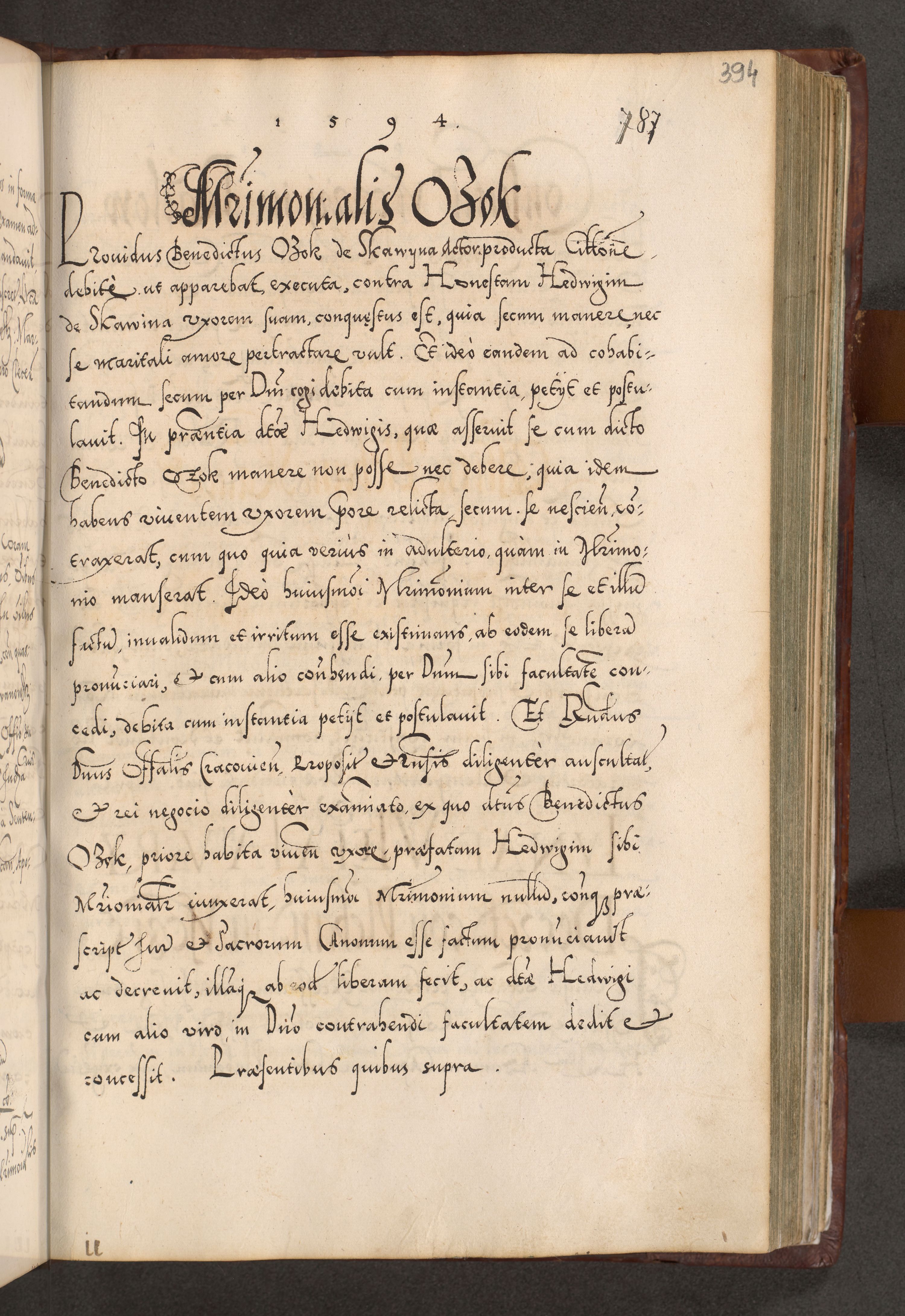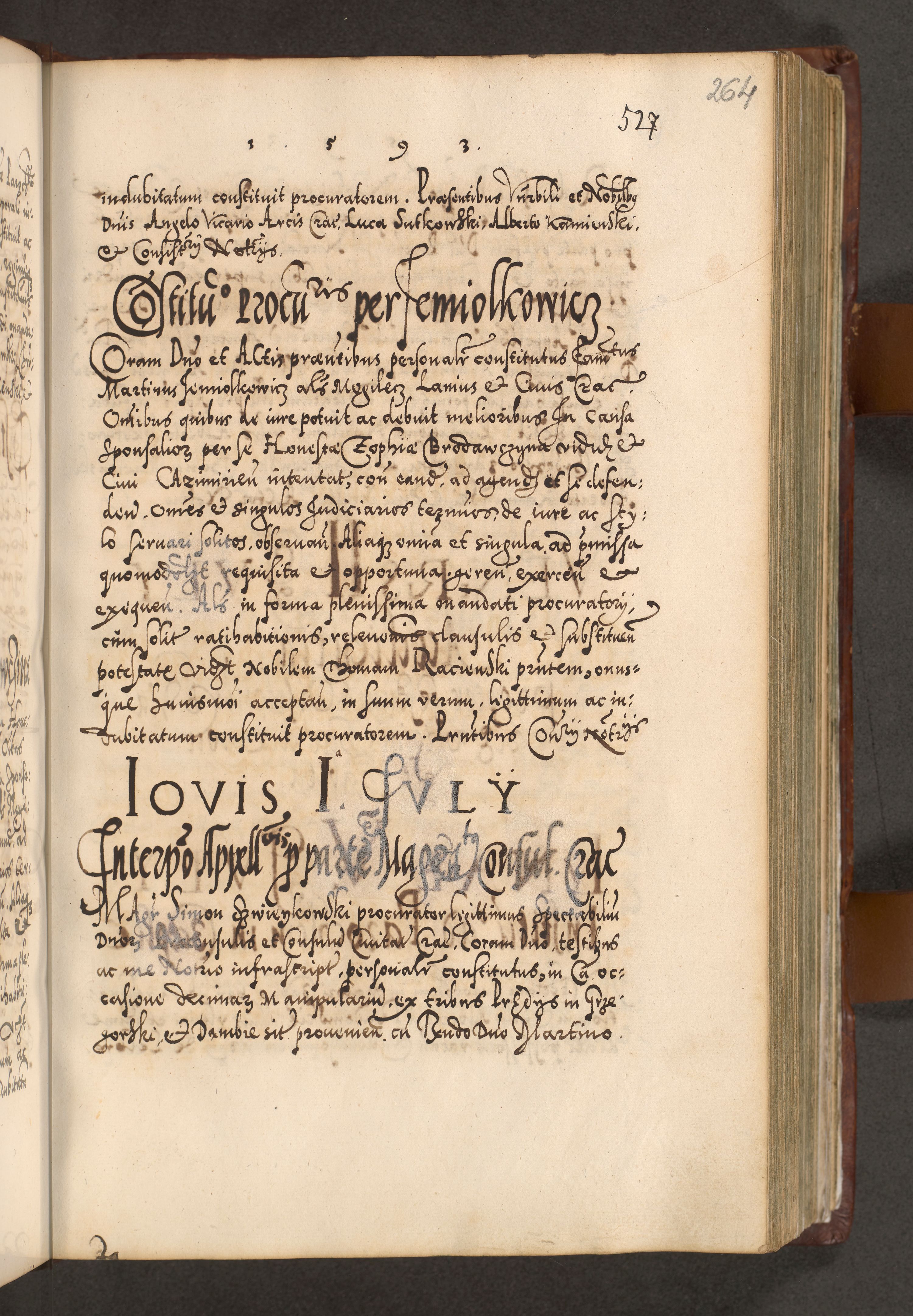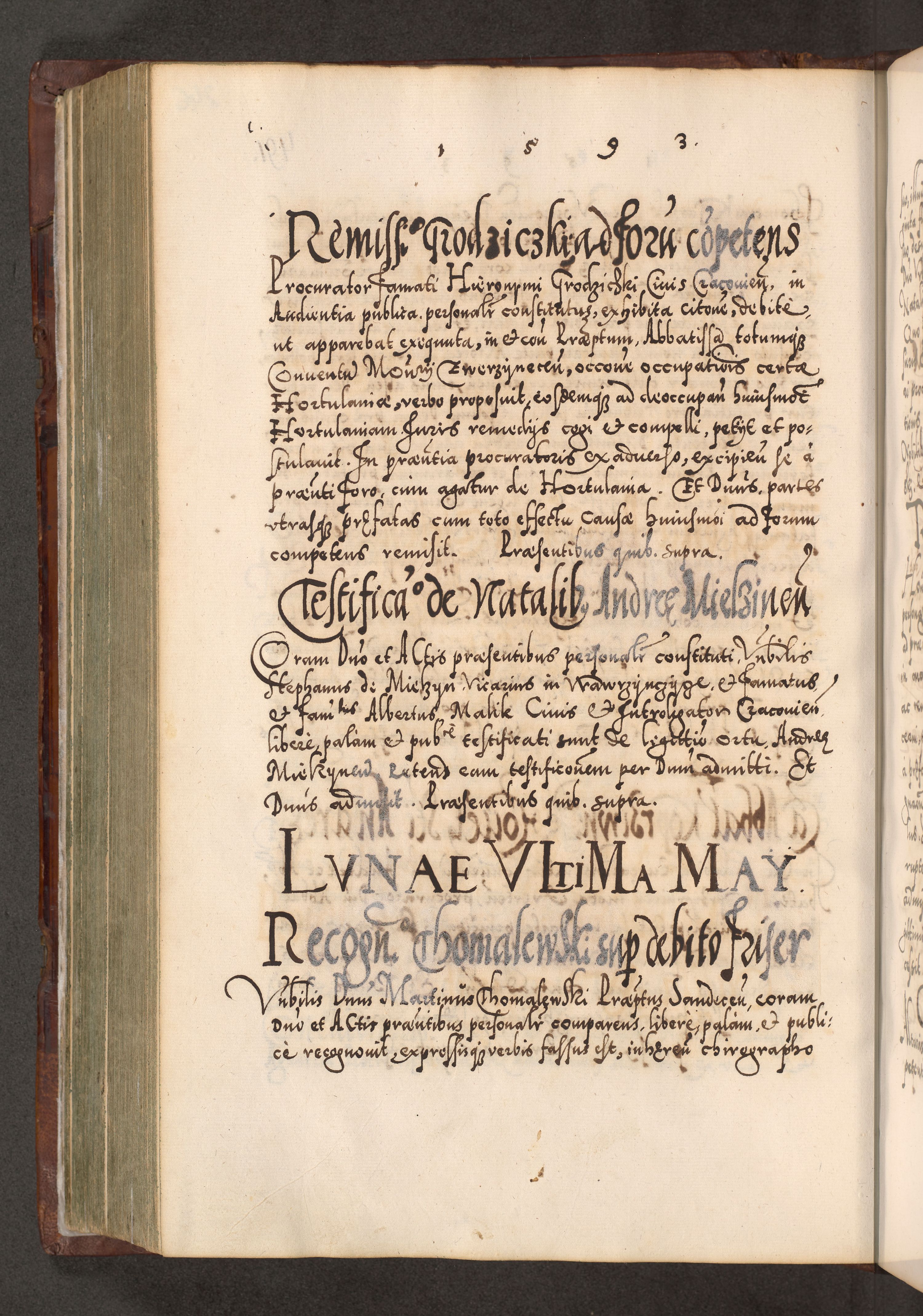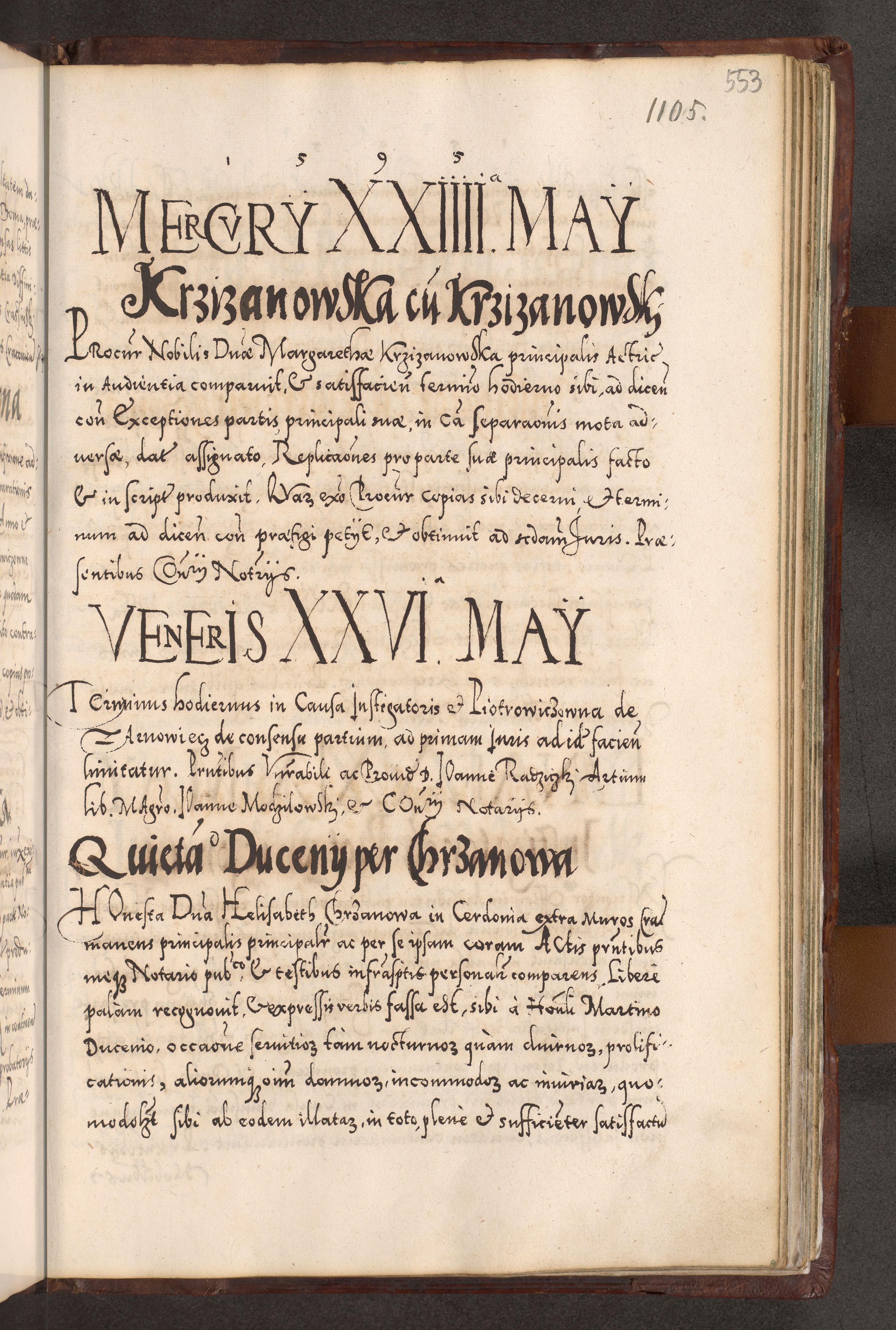 Illistrissimo et revedissimo in Christo Patre Domino Domino Georgio Rzadziwił Miserone Divina Sacrostae R. E. Tituli S. Sixti Presbitero Cardinali Duce in Olyka et Niesswiesz ad Gubernacula Ecclessiae Cracoviensis cuius administratorialem a Sancta Sede Apostolica obtinverat feliciter sedente. Acta actorum, causarum, sententiarum tam deffinitivarum quam interloquutoriarum decretorum, obligationum, quietationum, recognitionum, constitutionum procuratorum etc. coram Reverendo Domino Stanislao Crassinskz de Crasne Archidiacono Cracoviensis, Scholastico Gnesnesis, Custode Plocensis etc. Vicario et Officiali Generali Cracoviensi in Ano Domini Millesimo Quingentesimo Nonagesimo Primo cuius indictio quarta pontificatus SS. Domini Nostri Gregorii XIIII Anno I psius prio feliciter incipiut