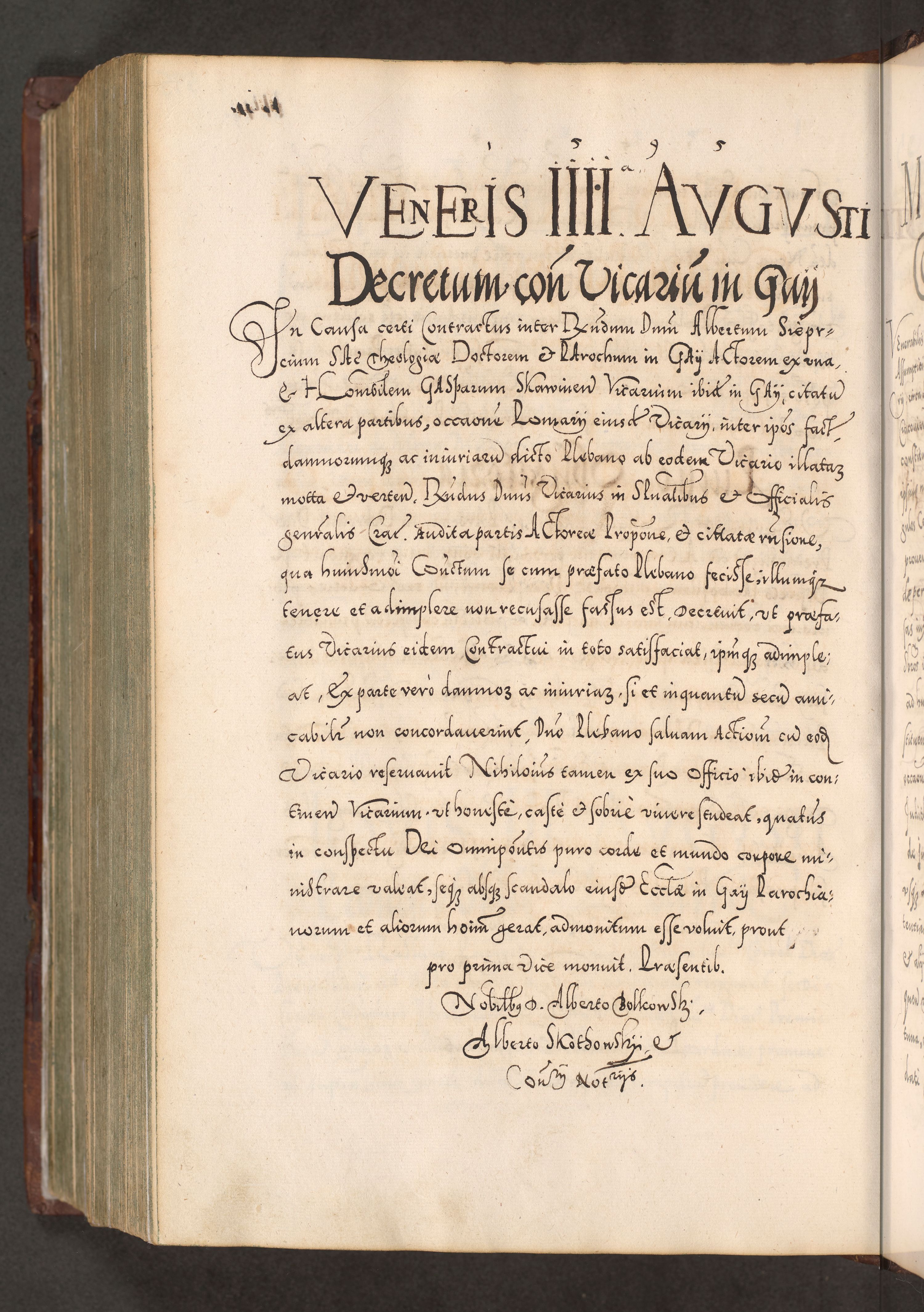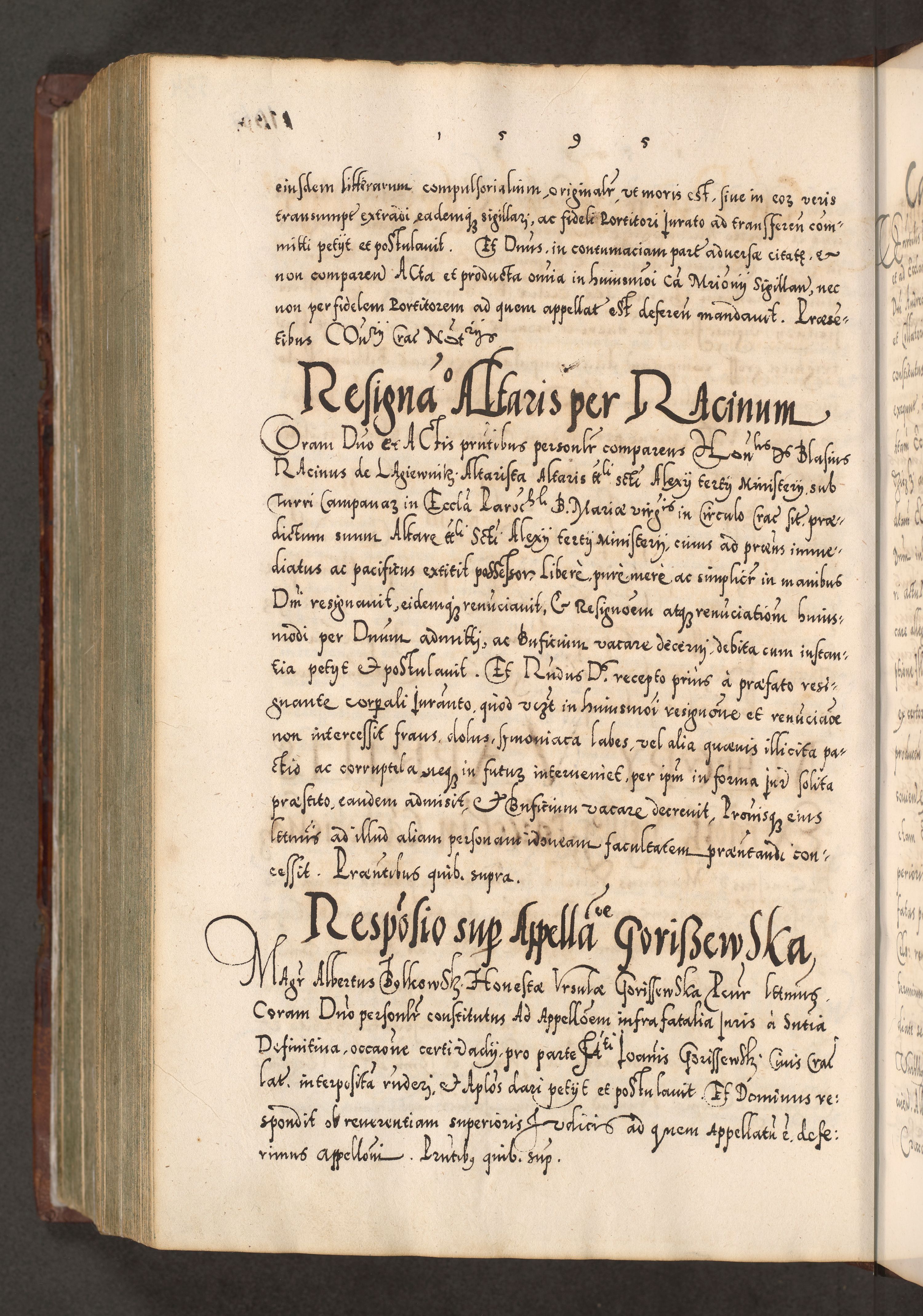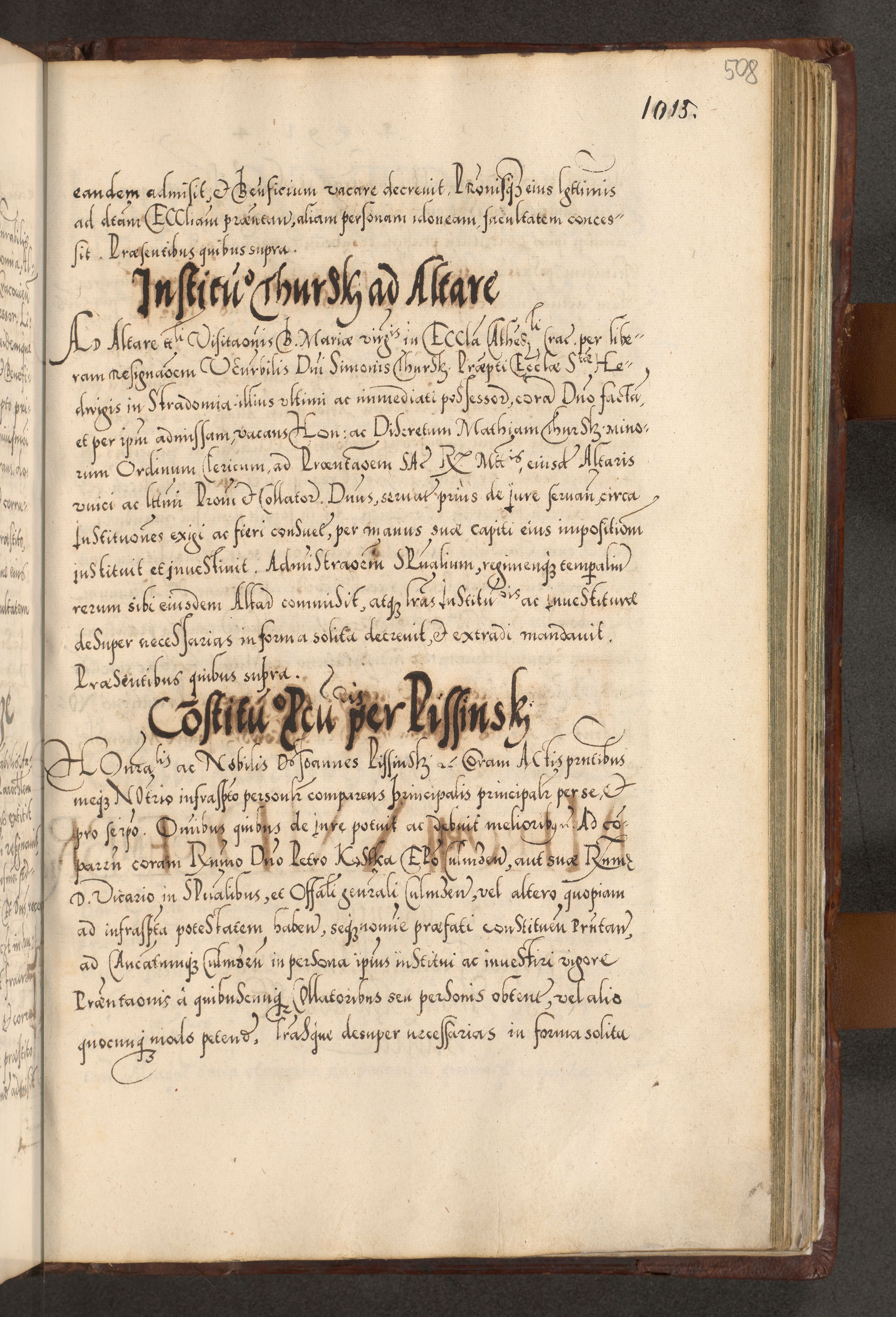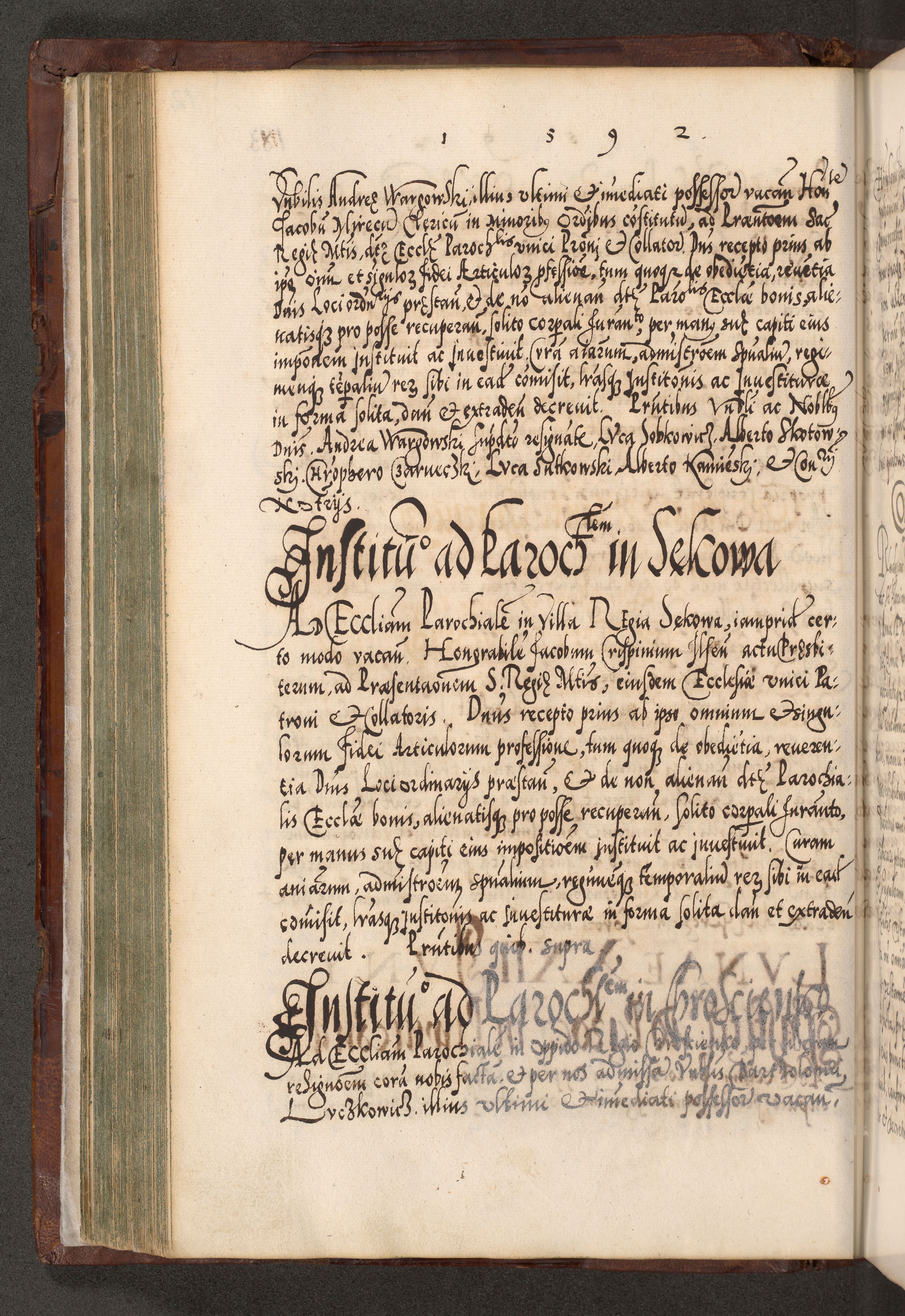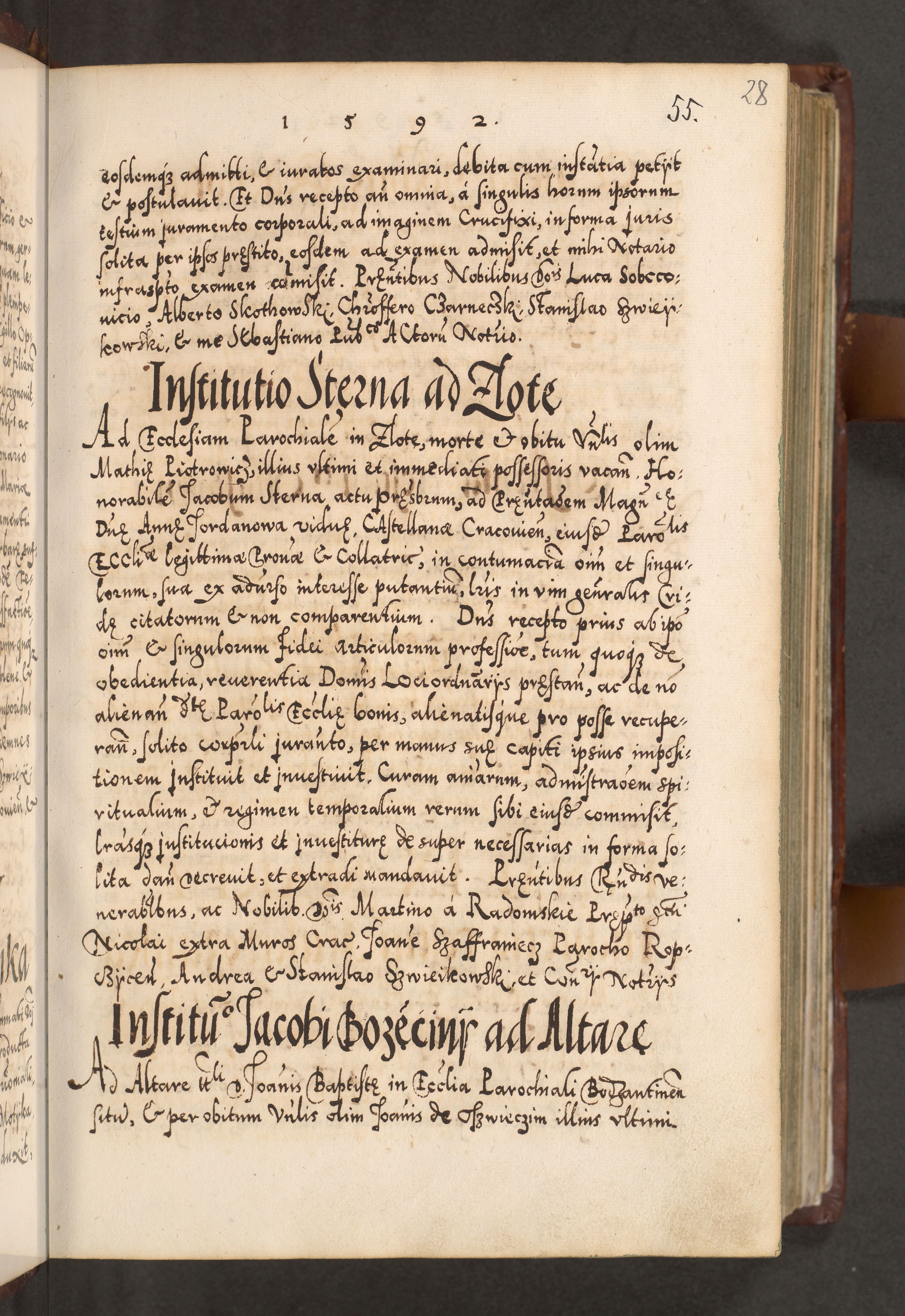 Illistrissimo et revedissimo in Christo Patre Domino Domino Georgio Rzadziwił Miserone Divina Sacrostae R. E. Tituli S. Sixti Presbitero Cardinali Duce in Olyka et Niesswiesz ad Gubernacula Ecclessiae Cracoviensis cuius administratorialem a Sancta Sede Apostolica obtinverat feliciter sedente. Acta actorum, causarum, sententiarum tam deffinitivarum quam interloquutoriarum decretorum, obligationum, quietationum, recognitionum, constitutionum procuratorum etc. coram Reverendo Domino Stanislao Crassinskz de Crasne Archidiacono Cracoviensis, Scholastico Gnesnesis, Custode Plocensis etc. Vicario et Officiali Generali Cracoviensi in Ano Domini Millesimo Quingentesimo Nonagesimo Primo cuius indictio quarta pontificatus SS. Domini Nostri Gregorii XIIII Anno I psius prio feliciter incipiut