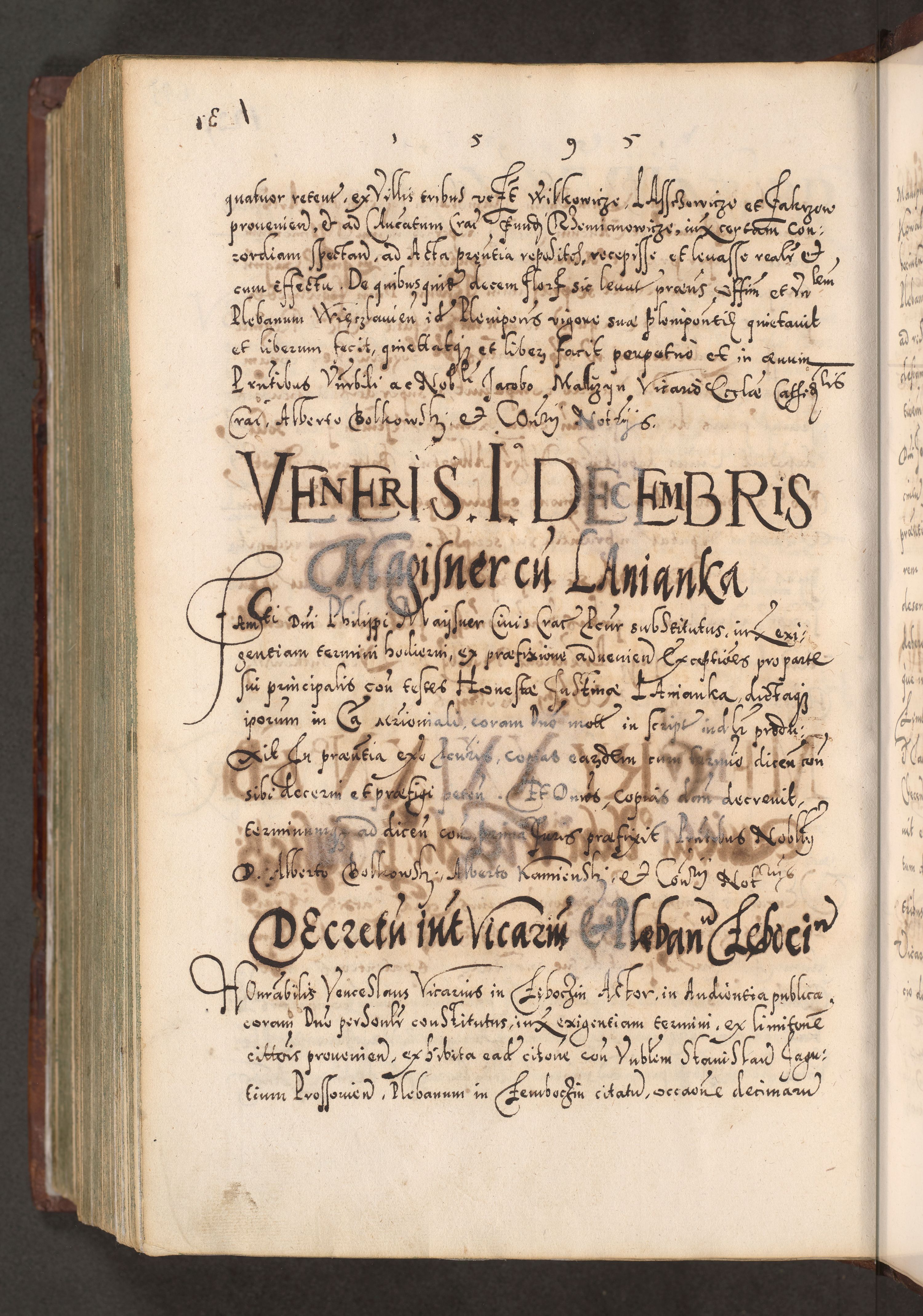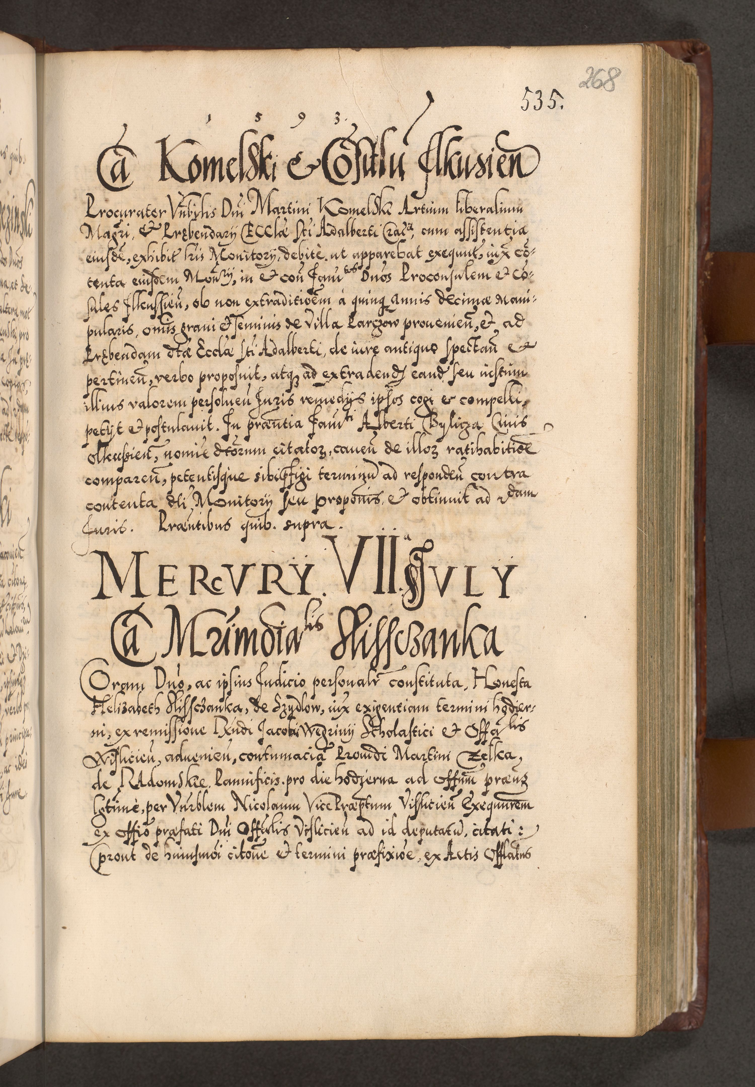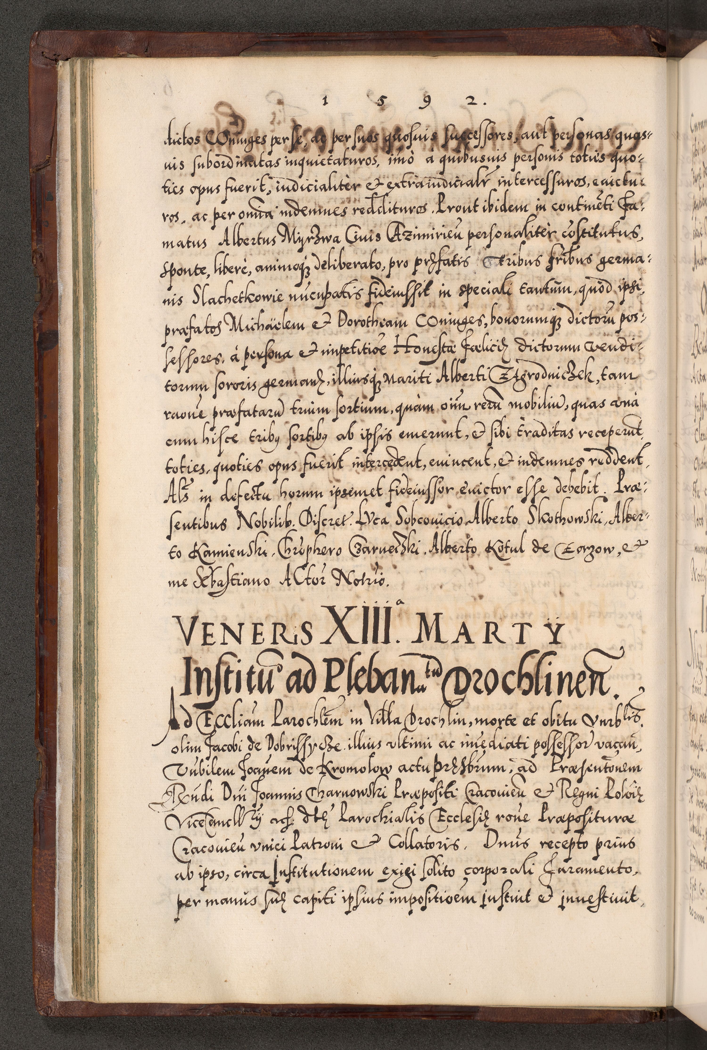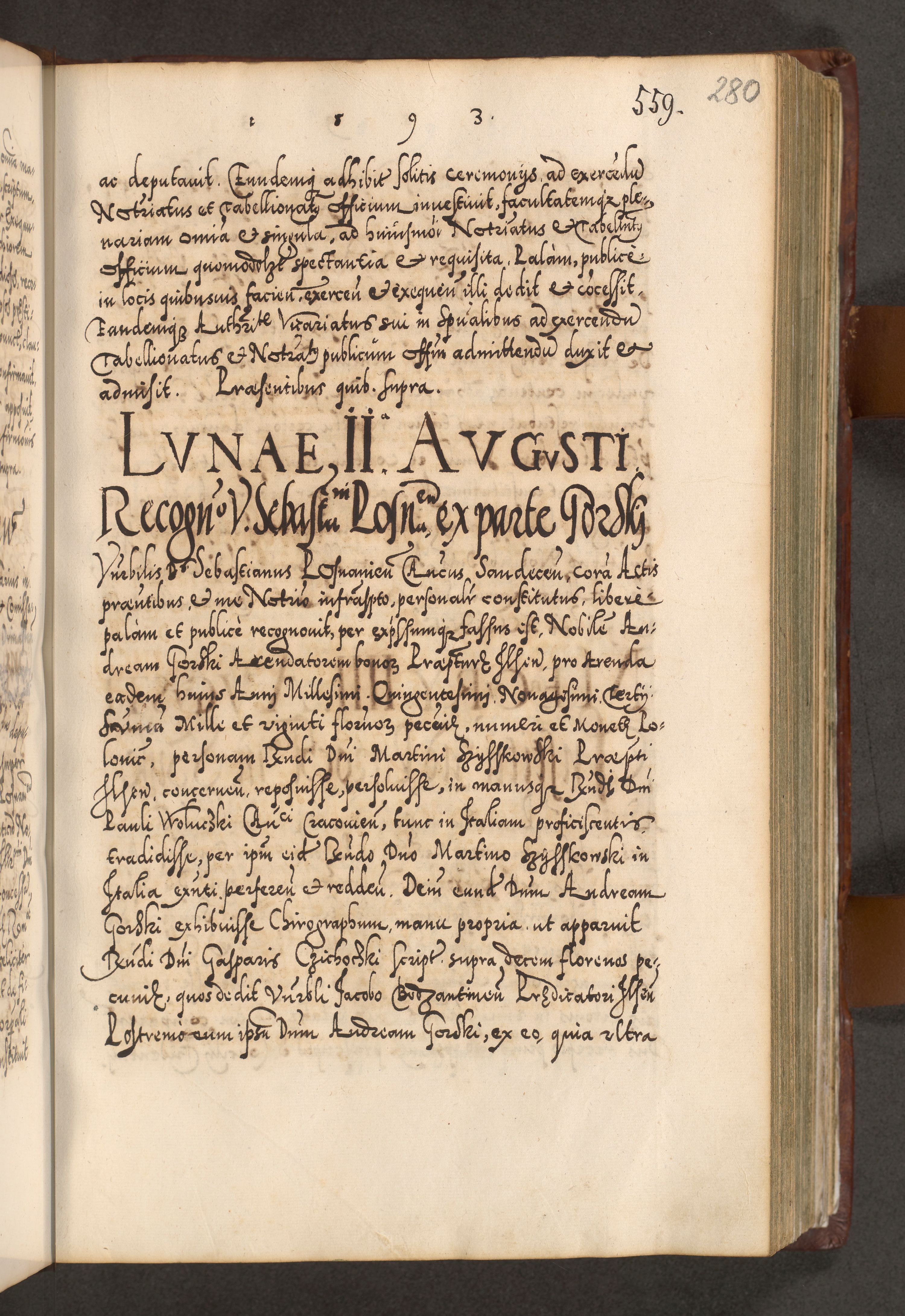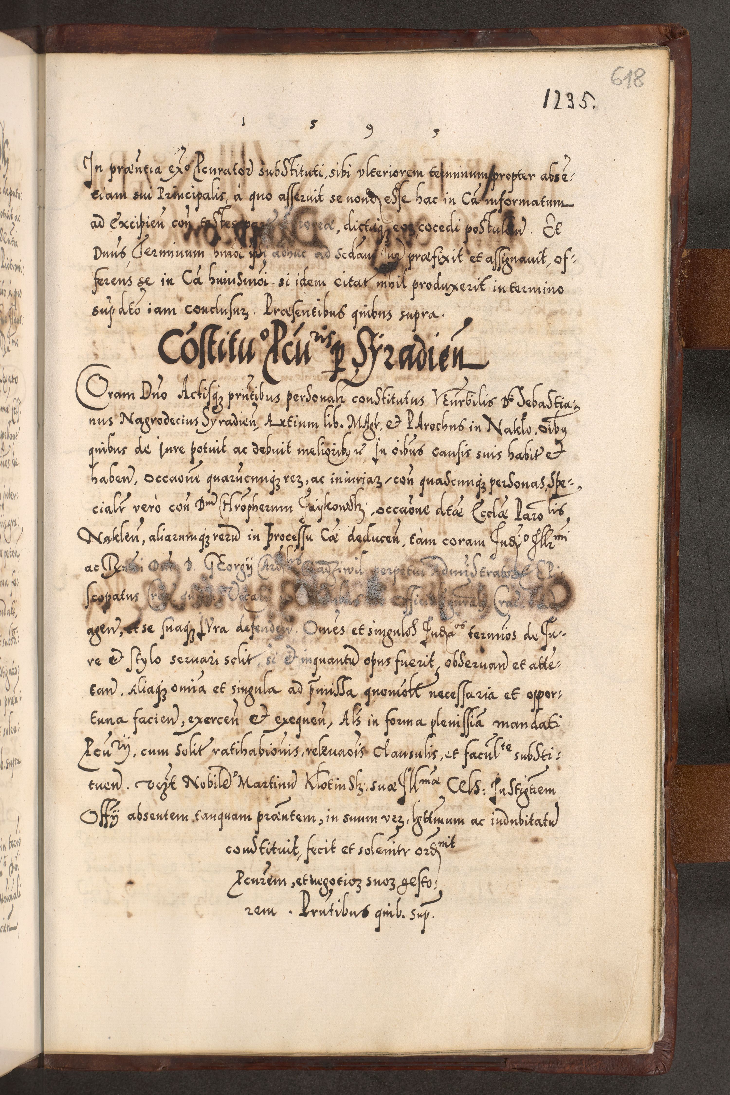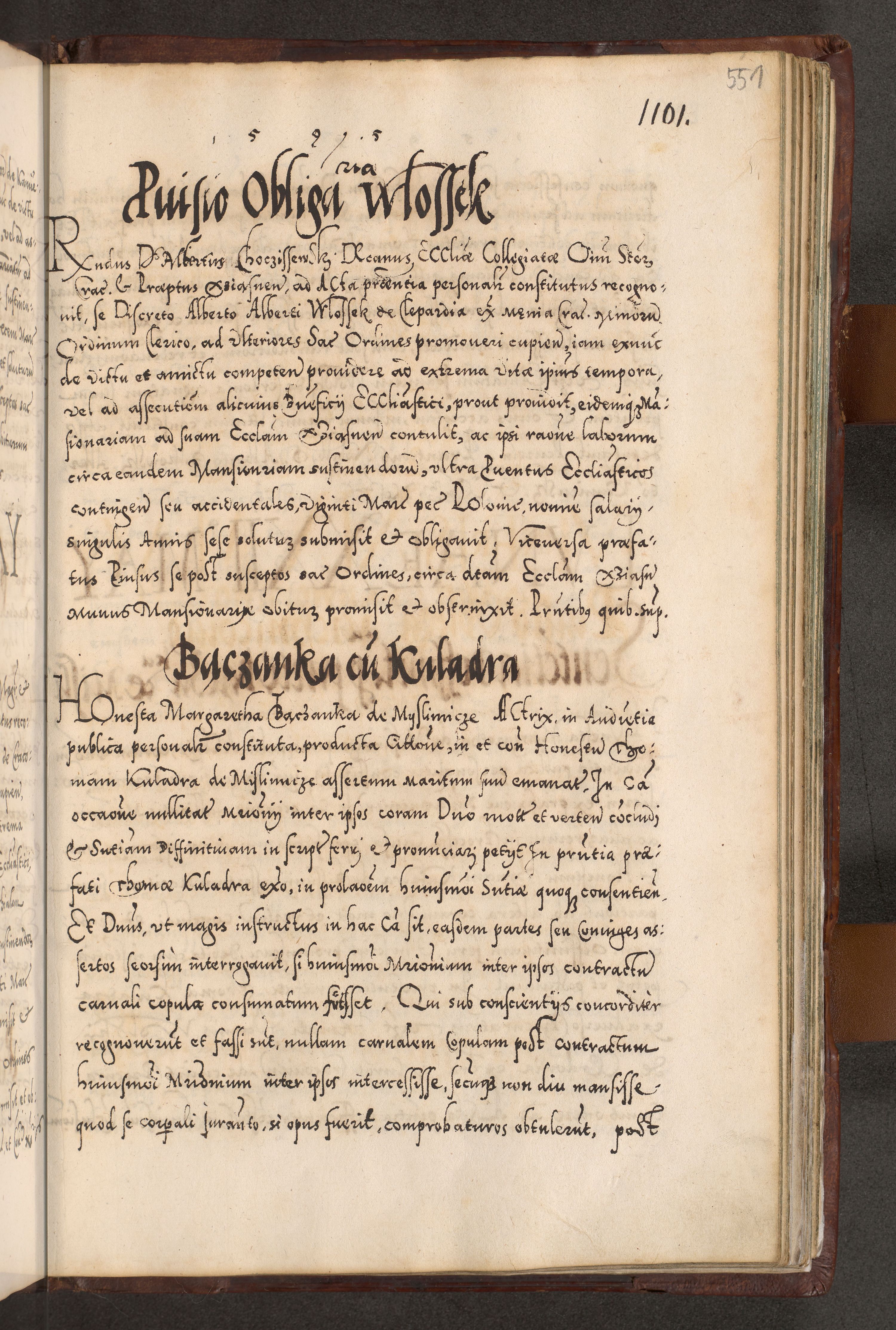 Illistrissimo et revedissimo in Christo Patre Domino Domino Georgio Rzadziwił Miserone Divina Sacrostae R. E. Tituli S. Sixti Presbitero Cardinali Duce in Olyka et Niesswiesz ad Gubernacula Ecclessiae Cracoviensis cuius administratorialem a Sancta Sede Apostolica obtinverat feliciter sedente. Acta actorum, causarum, sententiarum tam deffinitivarum quam interloquutoriarum decretorum, obligationum, quietationum, recognitionum, constitutionum procuratorum etc. coram Reverendo Domino Stanislao Crassinskz de Crasne Archidiacono Cracoviensis, Scholastico Gnesnesis, Custode Plocensis etc. Vicario et Officiali Generali Cracoviensi in Ano Domini Millesimo Quingentesimo Nonagesimo Primo cuius indictio quarta pontificatus SS. Domini Nostri Gregorii XIIII Anno I psius prio feliciter incipiut