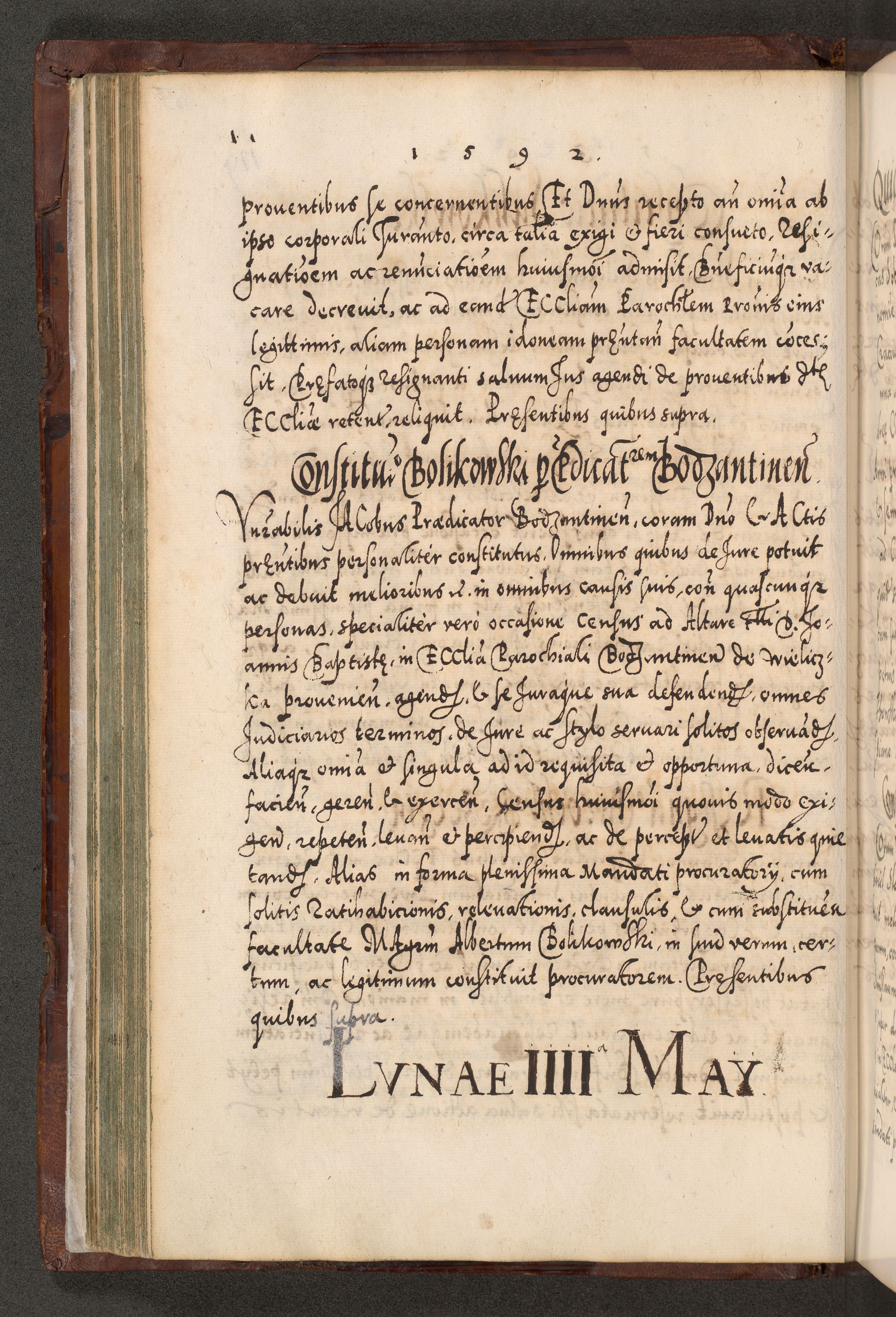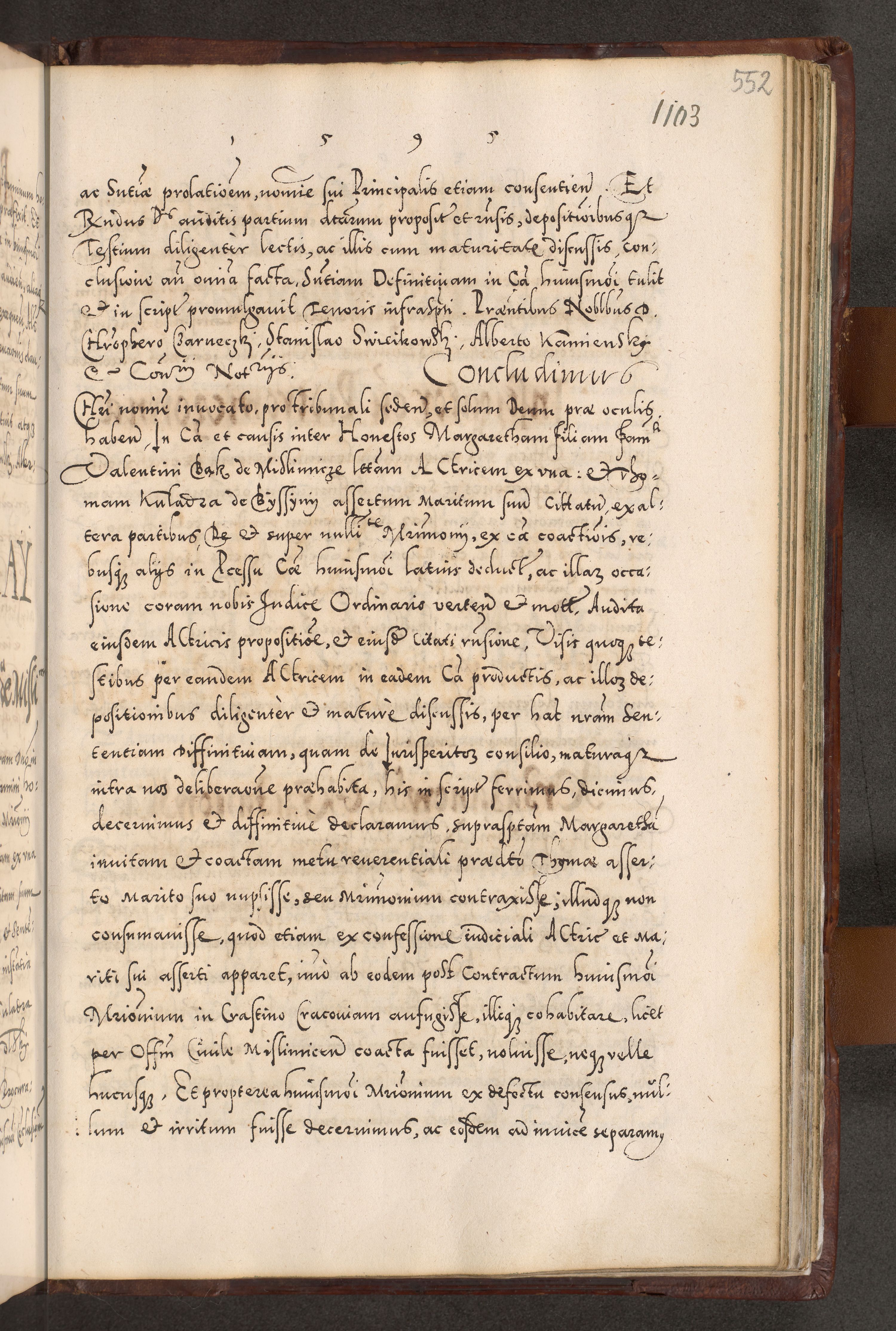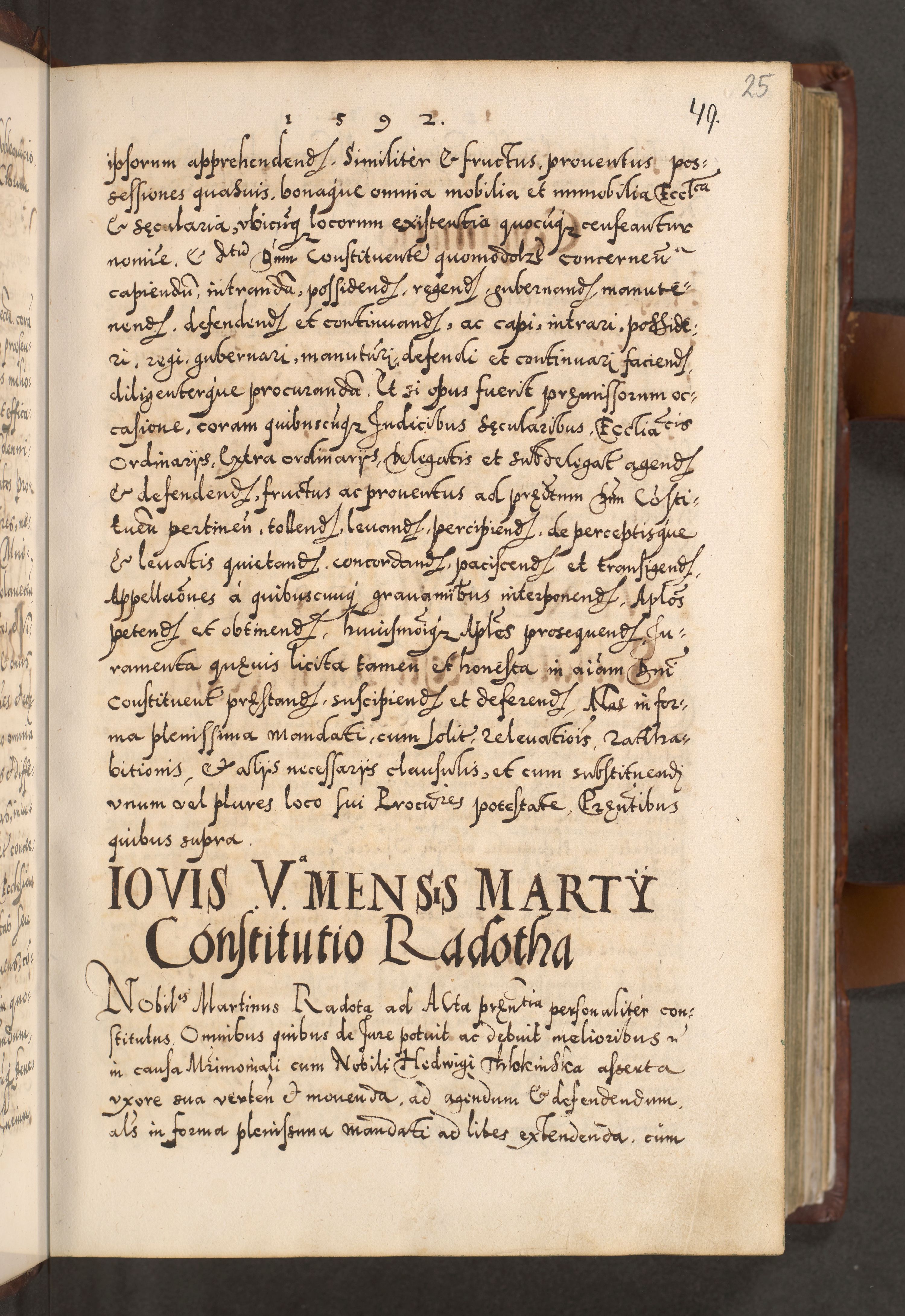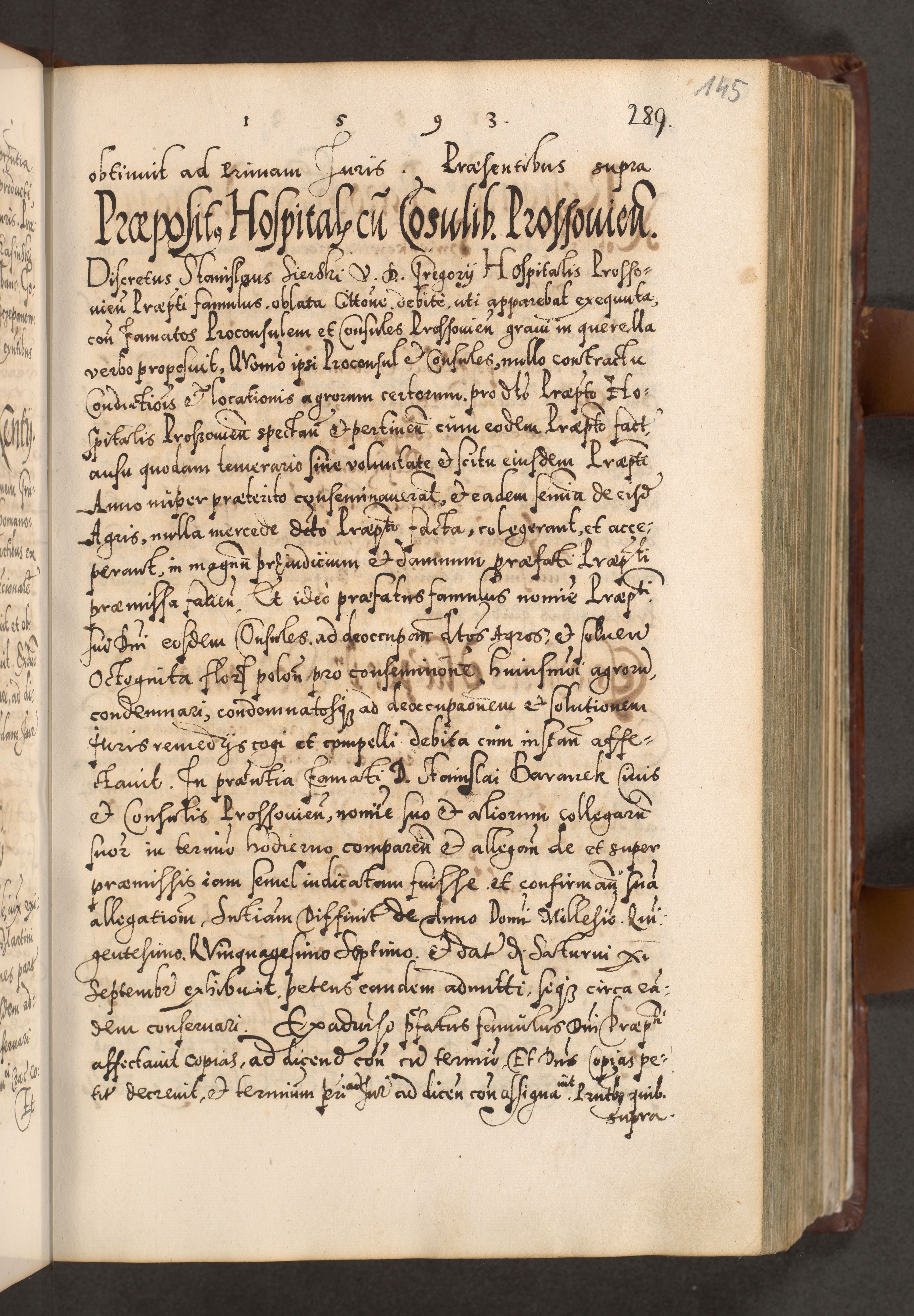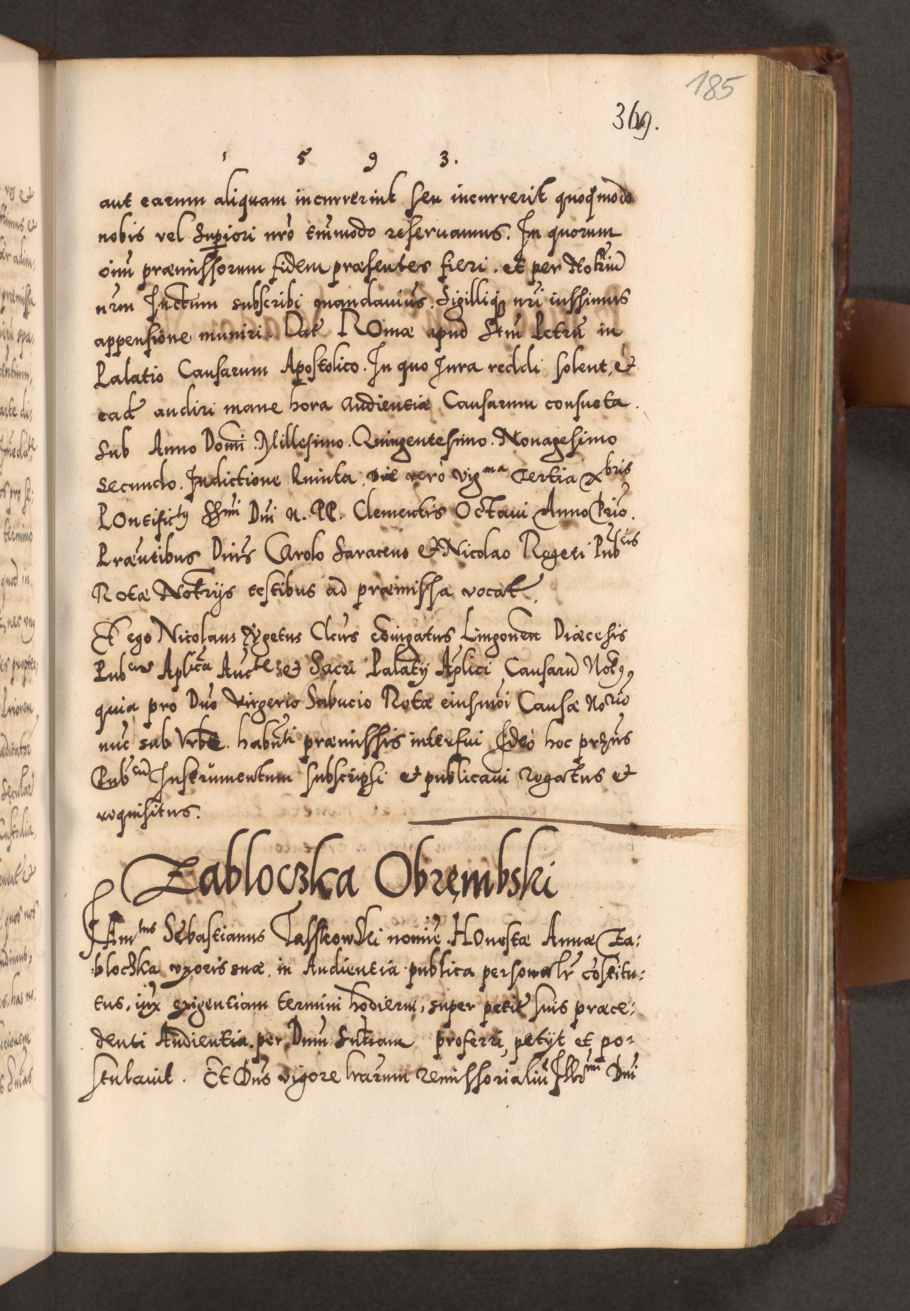 Illistrissimo et revedissimo in Christo Patre Domino Domino Georgio Rzadziwił Miserone Divina Sacrostae R. E. Tituli S. Sixti Presbitero Cardinali Duce in Olyka et Niesswiesz ad Gubernacula Ecclessiae Cracoviensis cuius administratorialem a Sancta Sede Apostolica obtinverat feliciter sedente. Acta actorum, causarum, sententiarum tam deffinitivarum quam interloquutoriarum decretorum, obligationum, quietationum, recognitionum, constitutionum procuratorum etc. coram Reverendo Domino Stanislao Crassinskz de Crasne Archidiacono Cracoviensis, Scholastico Gnesnesis, Custode Plocensis etc. Vicario et Officiali Generali Cracoviensi in Ano Domini Millesimo Quingentesimo Nonagesimo Primo cuius indictio quarta pontificatus SS. Domini Nostri Gregorii XIIII Anno I psius prio feliciter incipiut
