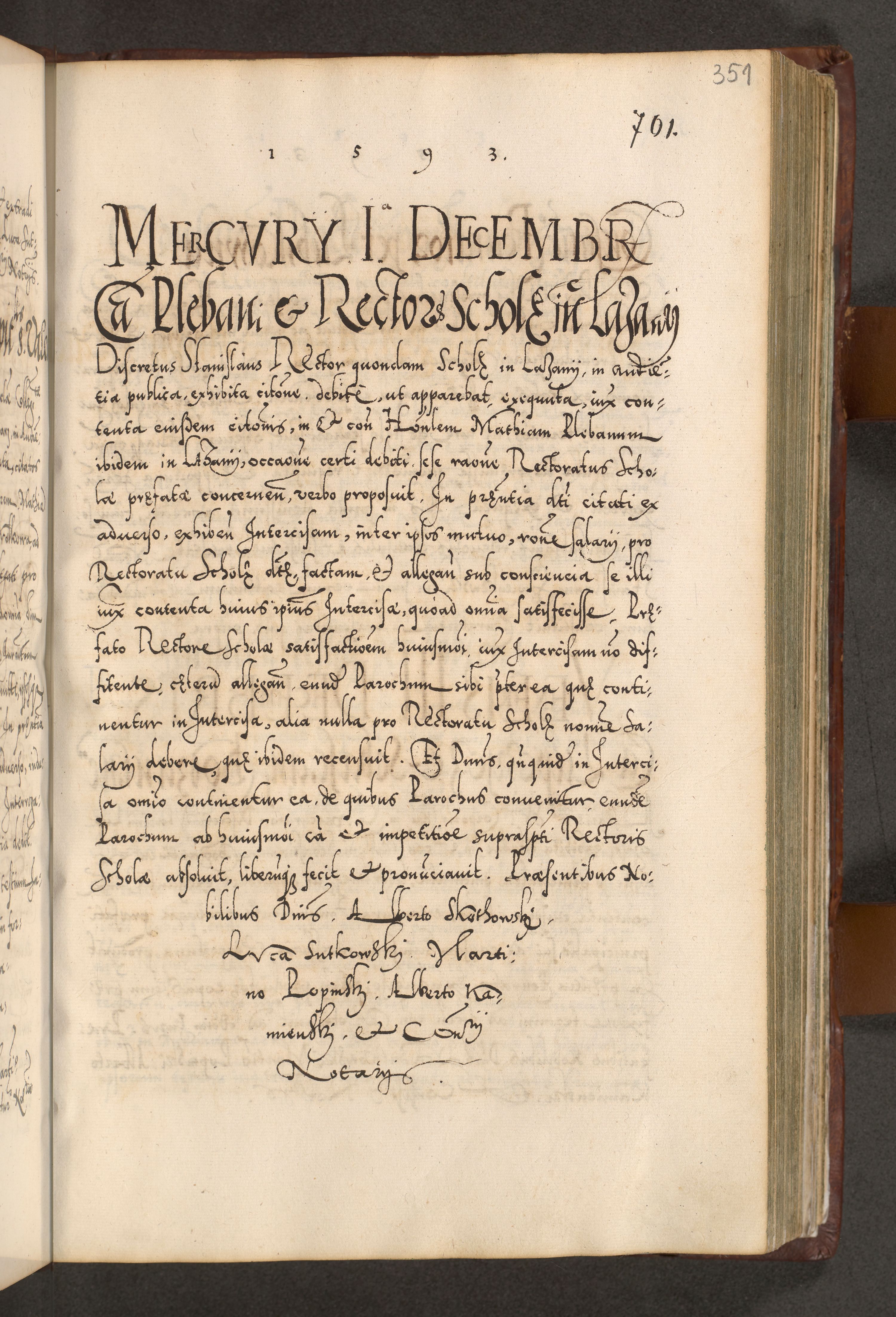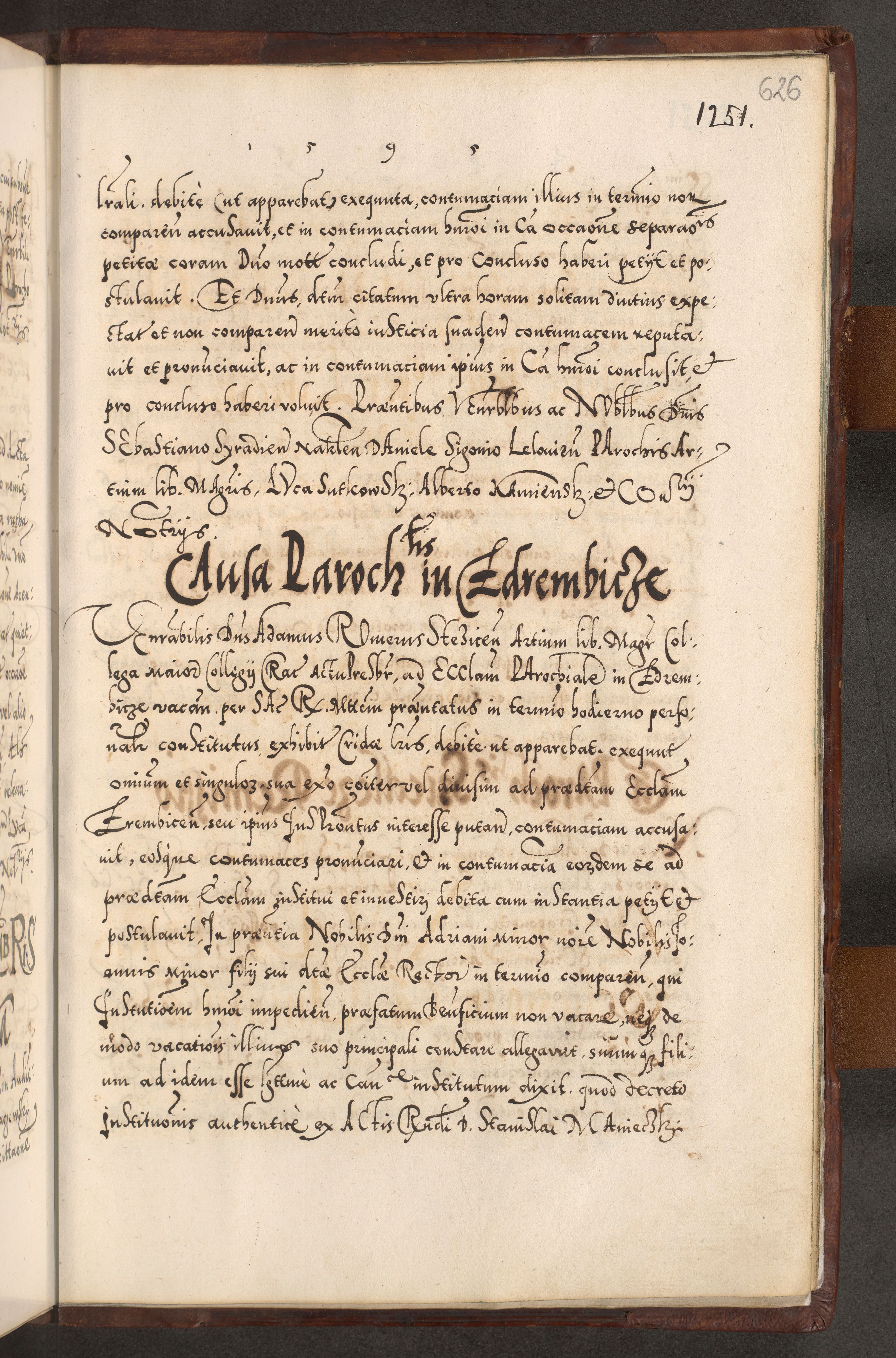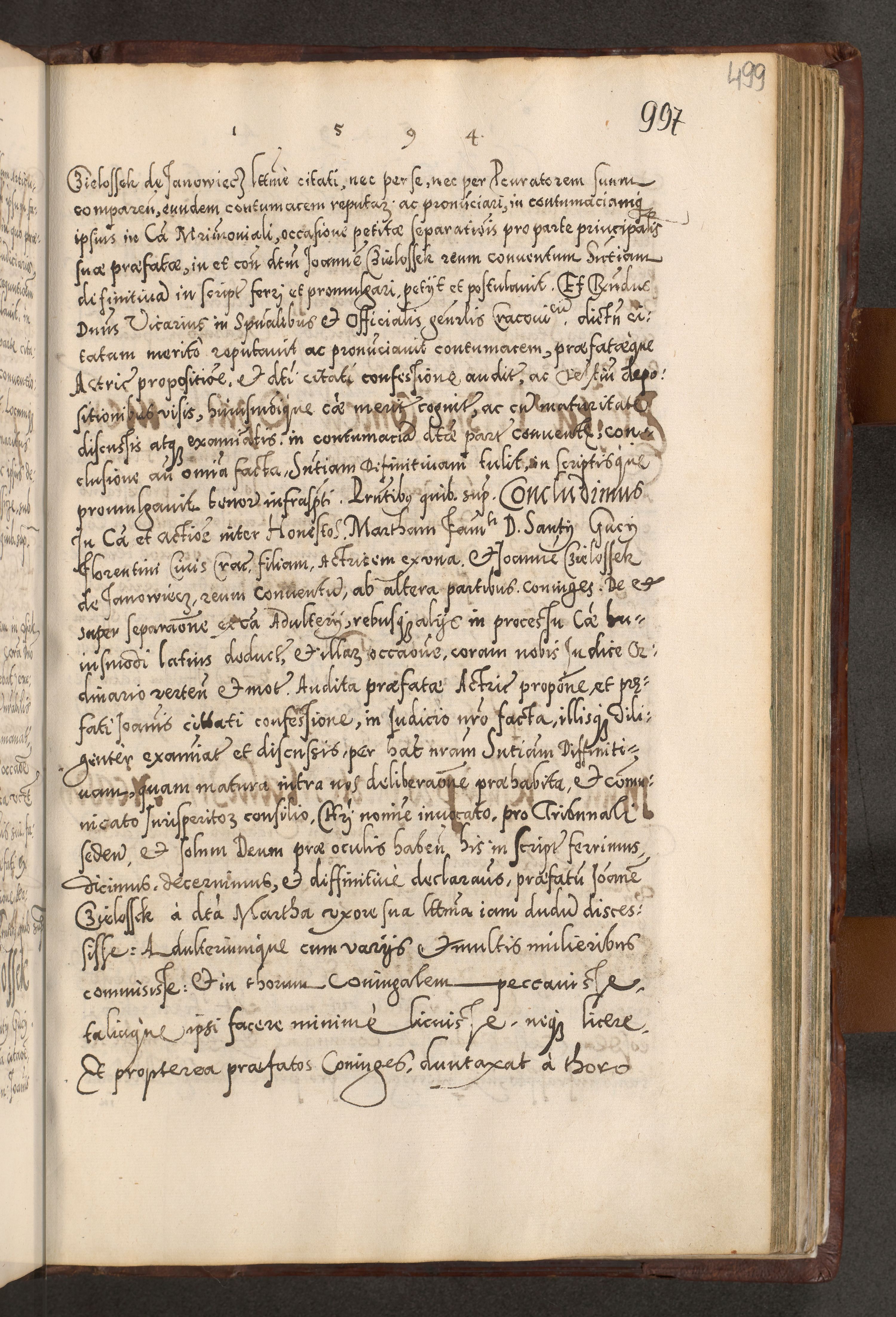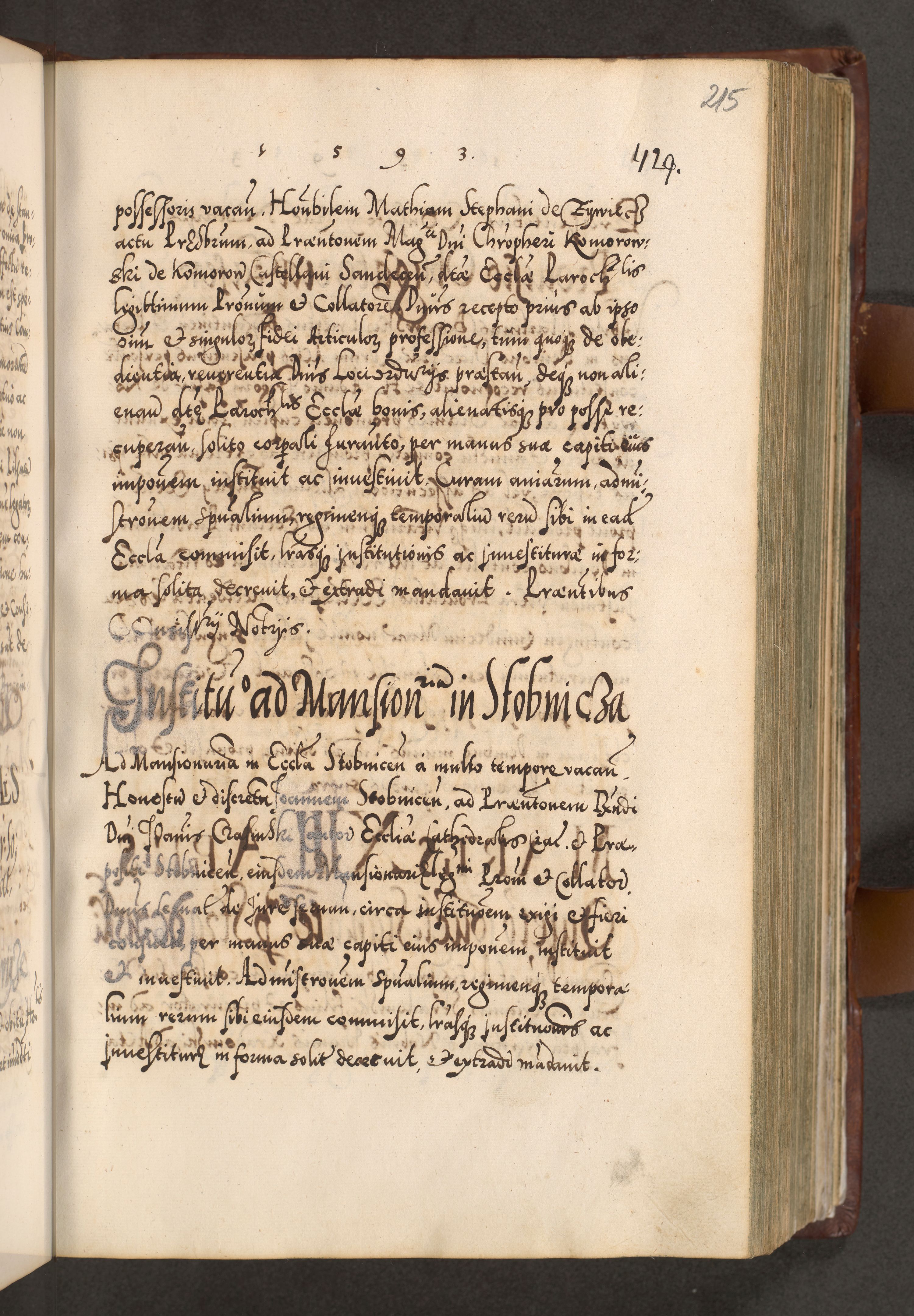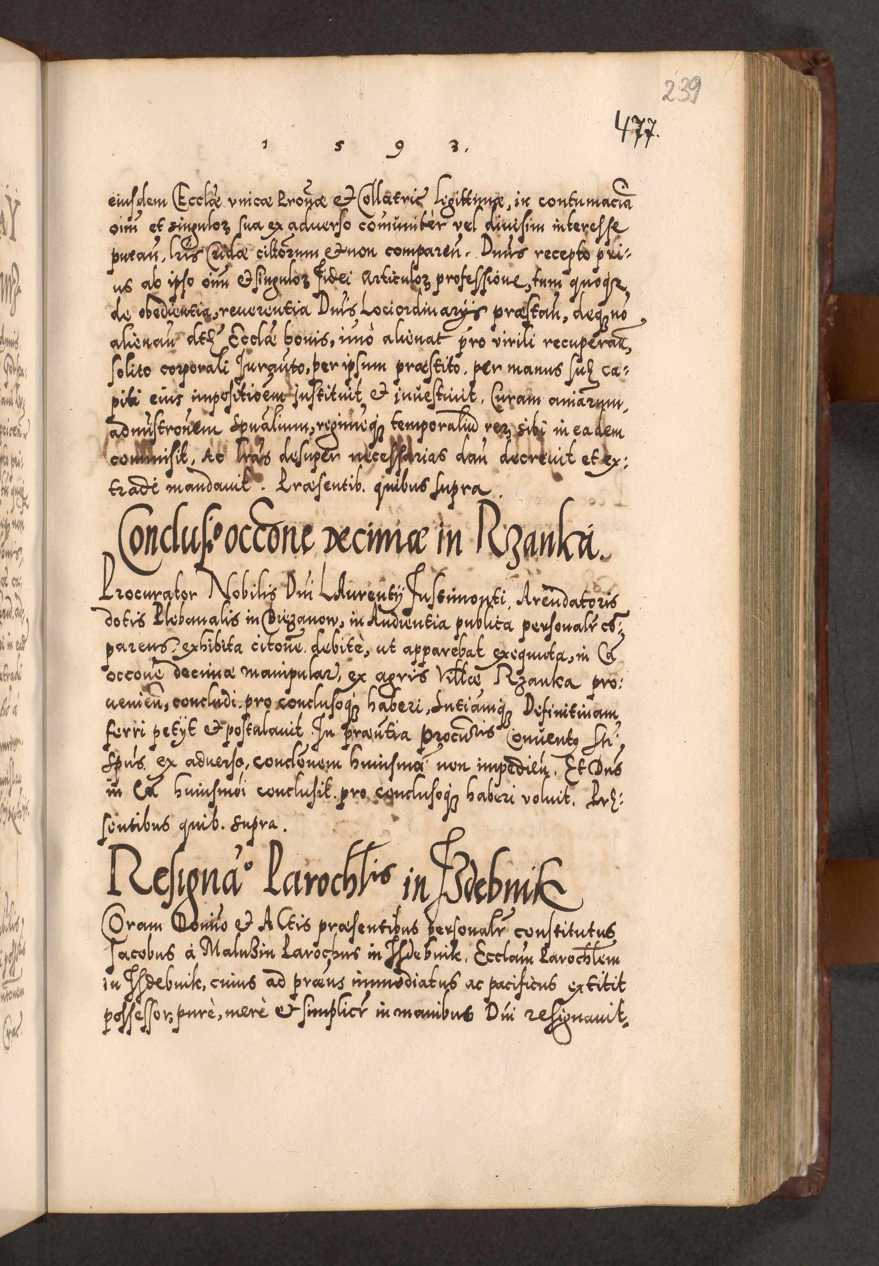 Illistrissimo et revedissimo in Christo Patre Domino Domino Georgio Rzadziwił Miserone Divina Sacrostae R. E. Tituli S. Sixti Presbitero Cardinali Duce in Olyka et Niesswiesz ad Gubernacula Ecclessiae Cracoviensis cuius administratorialem a Sancta Sede Apostolica obtinverat feliciter sedente. Acta actorum, causarum, sententiarum tam deffinitivarum quam interloquutoriarum decretorum, obligationum, quietationum, recognitionum, constitutionum procuratorum etc. coram Reverendo Domino Stanislao Crassinskz de Crasne Archidiacono Cracoviensis, Scholastico Gnesnesis, Custode Plocensis etc. Vicario et Officiali Generali Cracoviensi in Ano Domini Millesimo Quingentesimo Nonagesimo Primo cuius indictio quarta pontificatus SS. Domini Nostri Gregorii XIIII Anno I psius prio feliciter incipiut