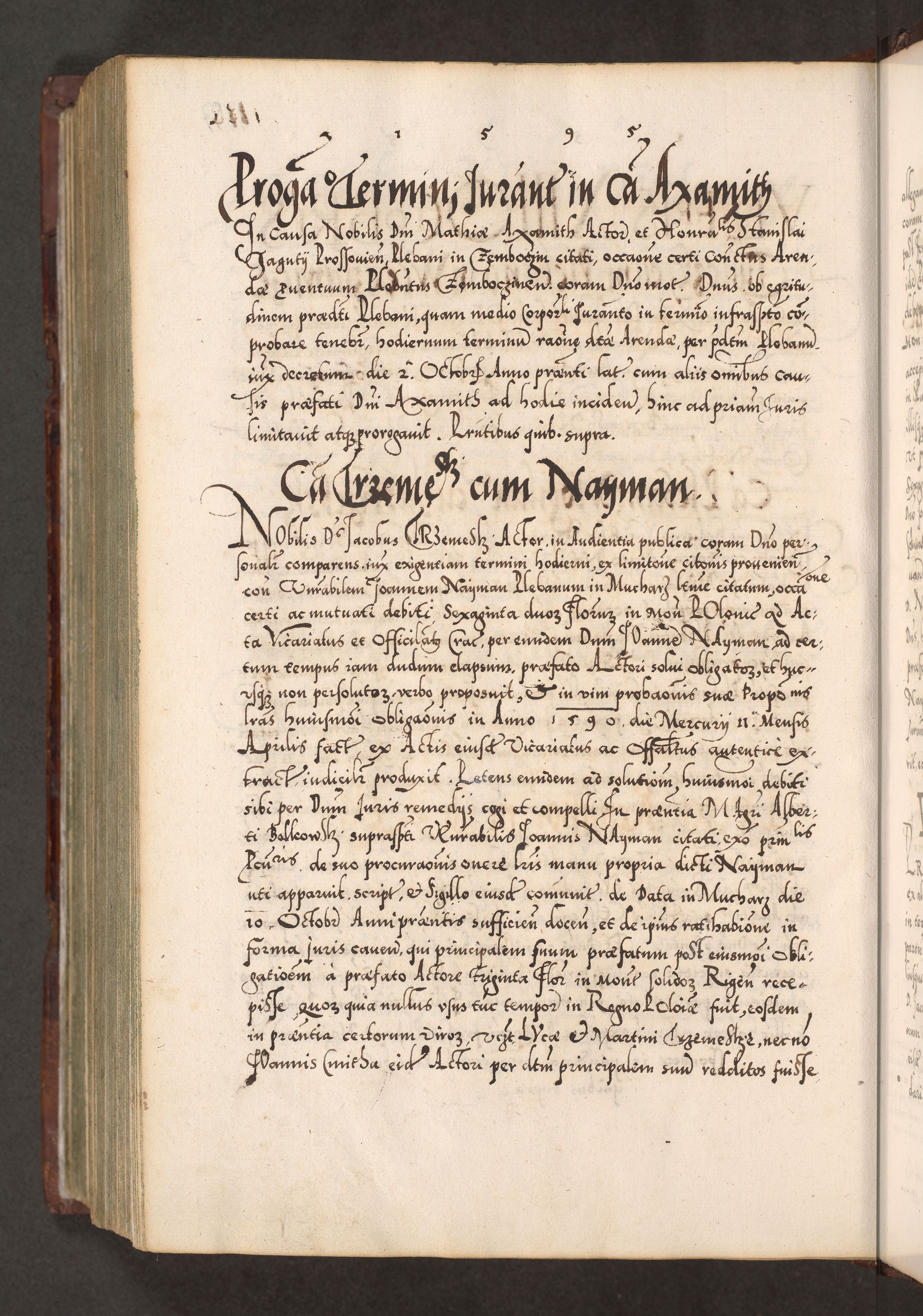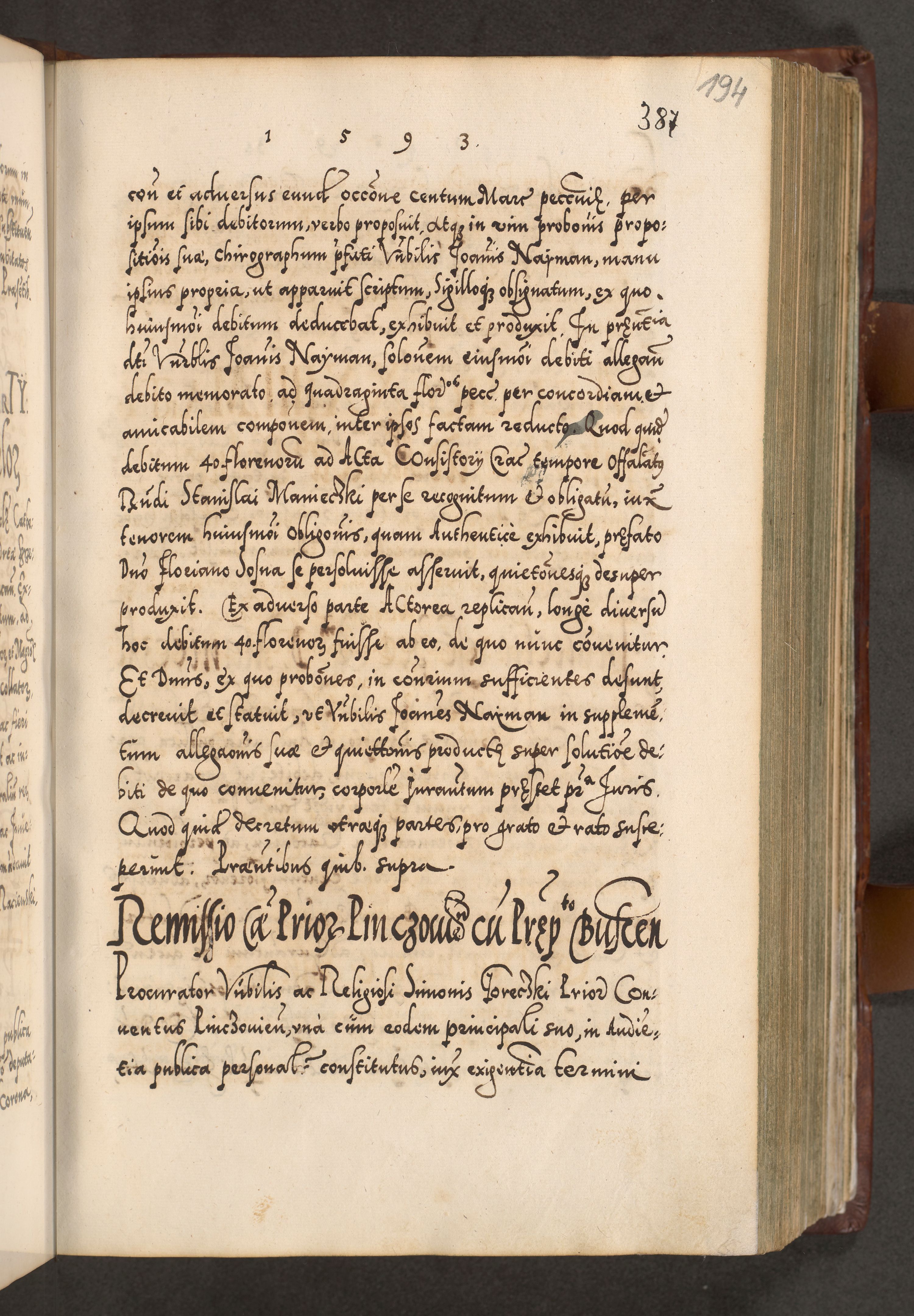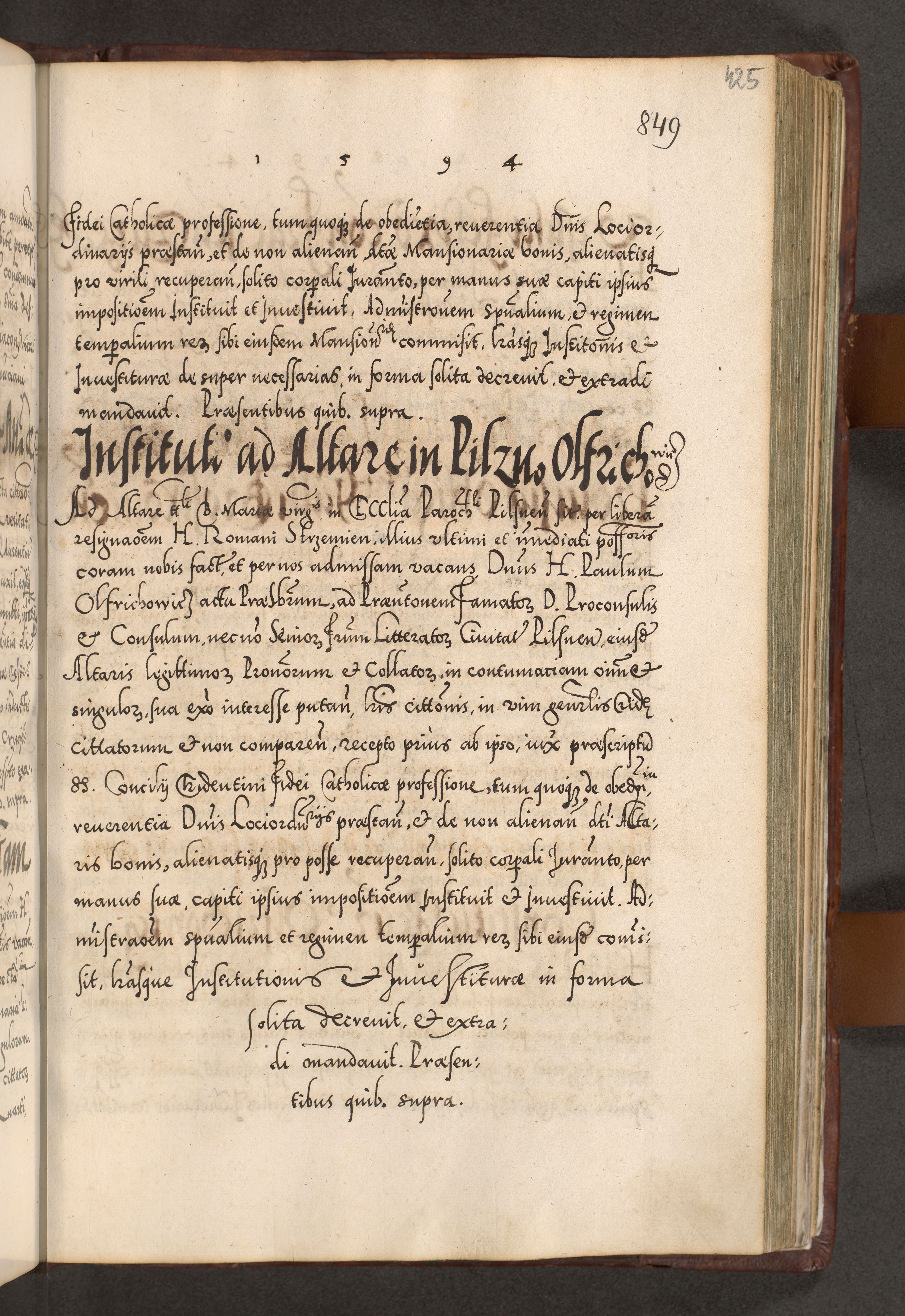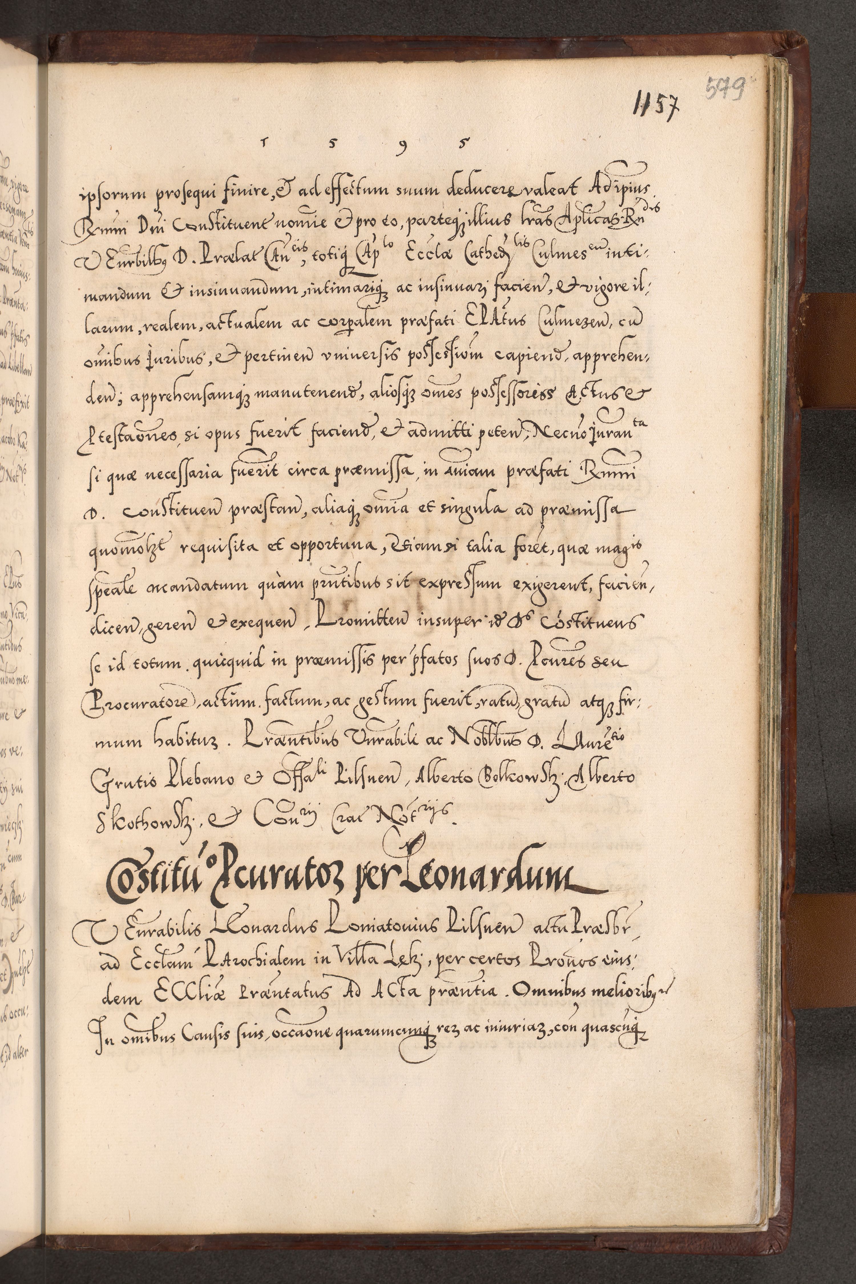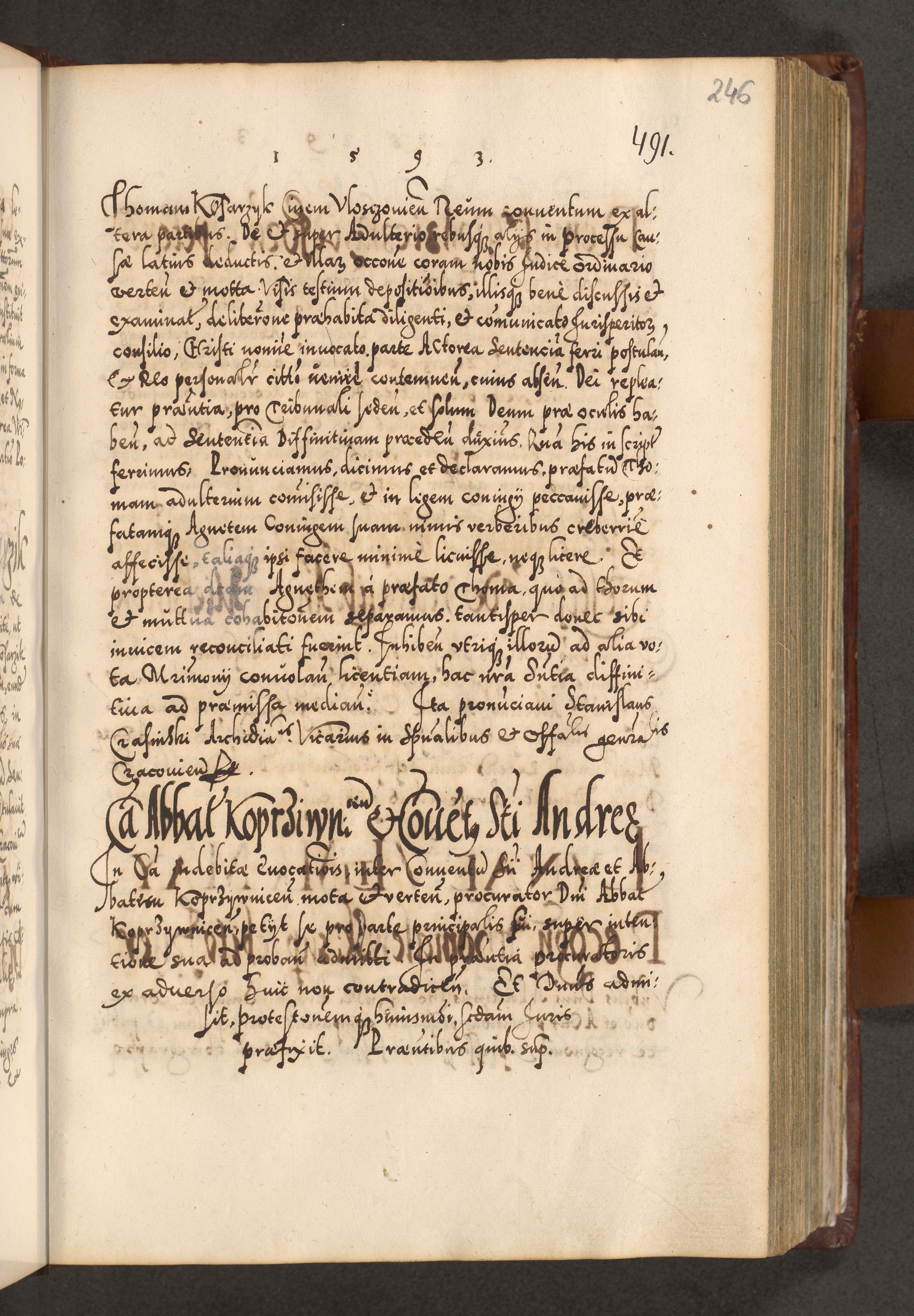 Illistrissimo et revedissimo in Christo Patre Domino Domino Georgio Rzadziwił Miserone Divina Sacrostae R. E. Tituli S. Sixti Presbitero Cardinali Duce in Olyka et Niesswiesz ad Gubernacula Ecclessiae Cracoviensis cuius administratorialem a Sancta Sede Apostolica obtinverat feliciter sedente. Acta actorum, causarum, sententiarum tam deffinitivarum quam interloquutoriarum decretorum, obligationum, quietationum, recognitionum, constitutionum procuratorum etc. coram Reverendo Domino Stanislao Crassinskz de Crasne Archidiacono Cracoviensis, Scholastico Gnesnesis, Custode Plocensis etc. Vicario et Officiali Generali Cracoviensi in Ano Domini Millesimo Quingentesimo Nonagesimo Primo cuius indictio quarta pontificatus SS. Domini Nostri Gregorii XIIII Anno I psius prio feliciter incipiut