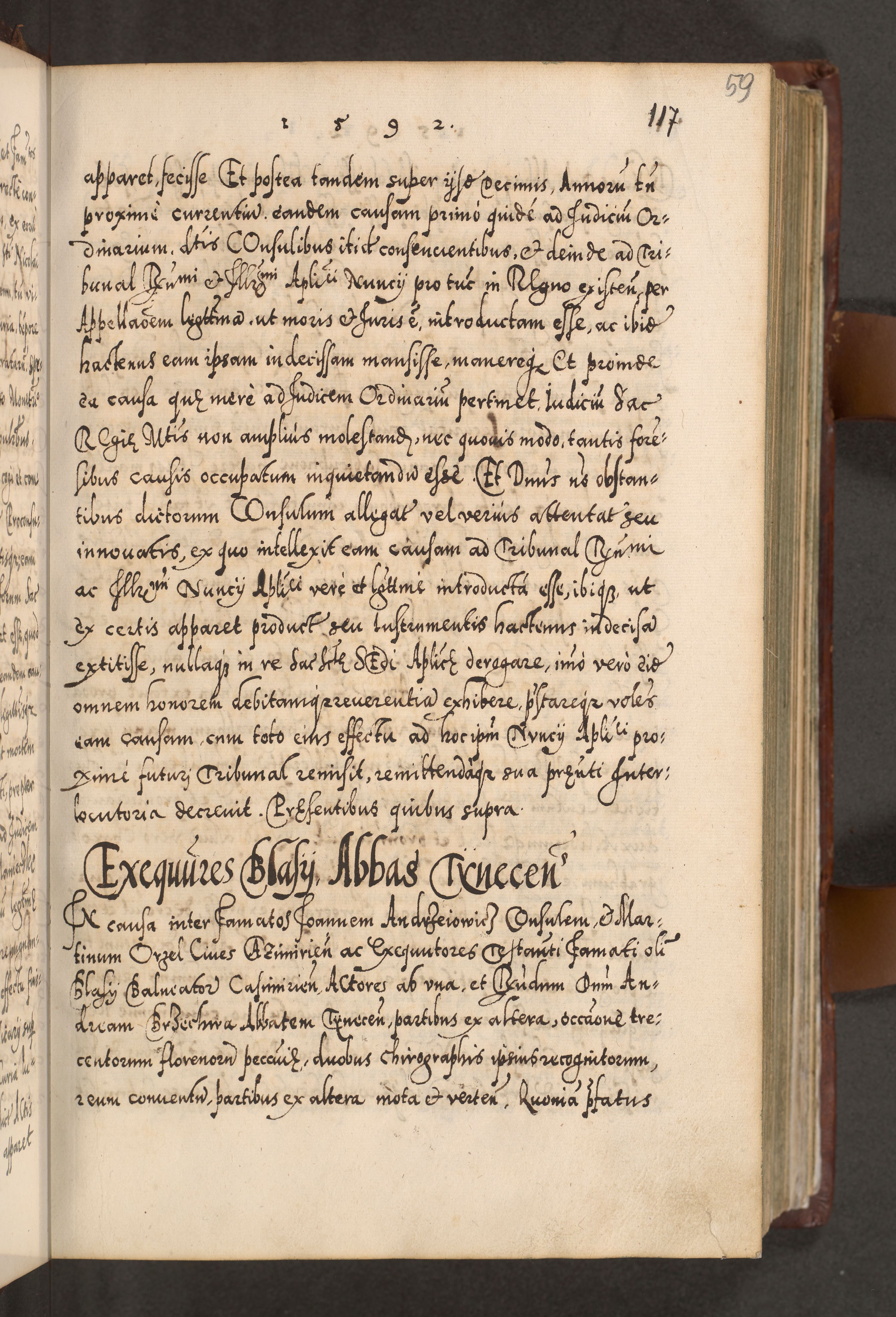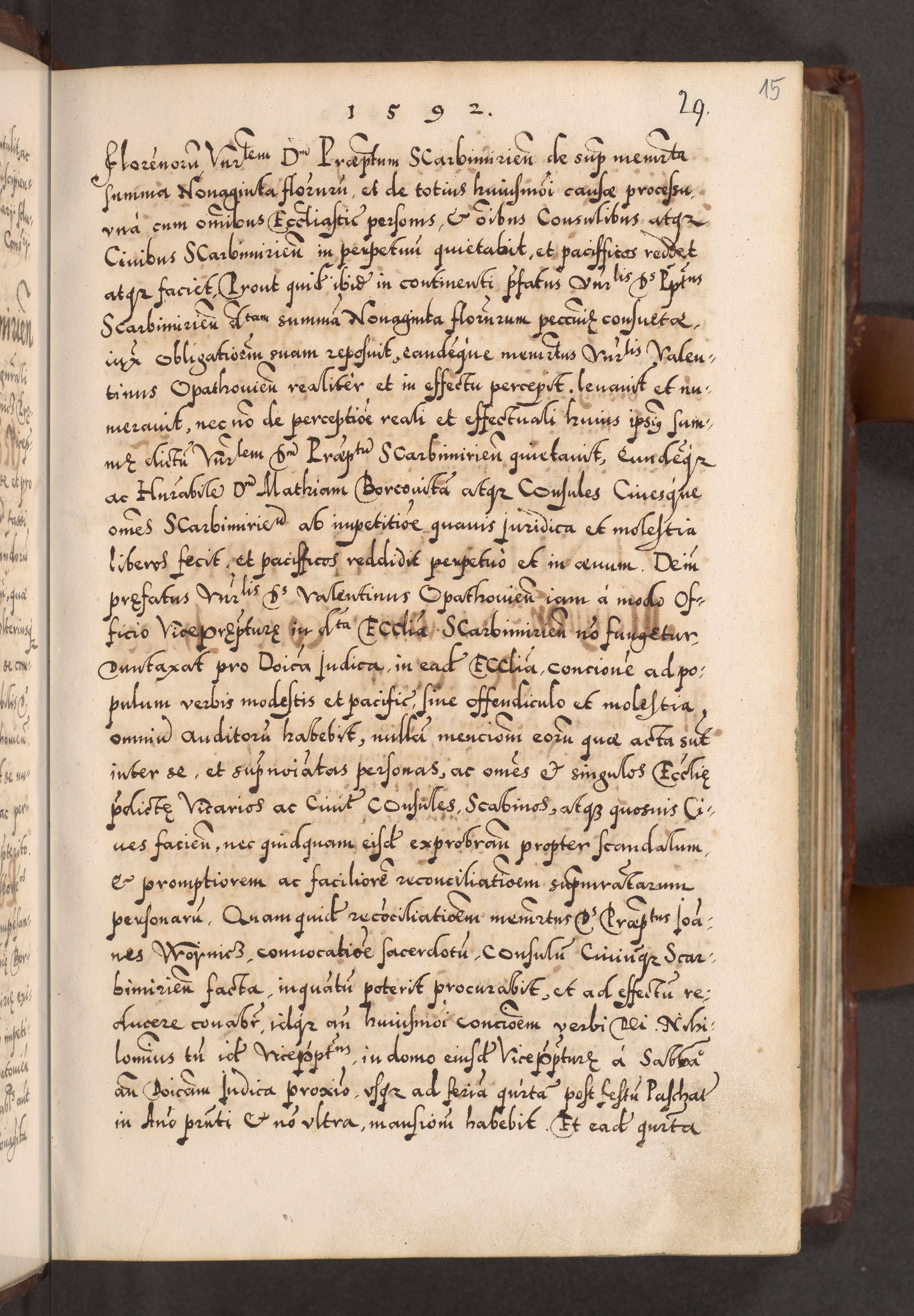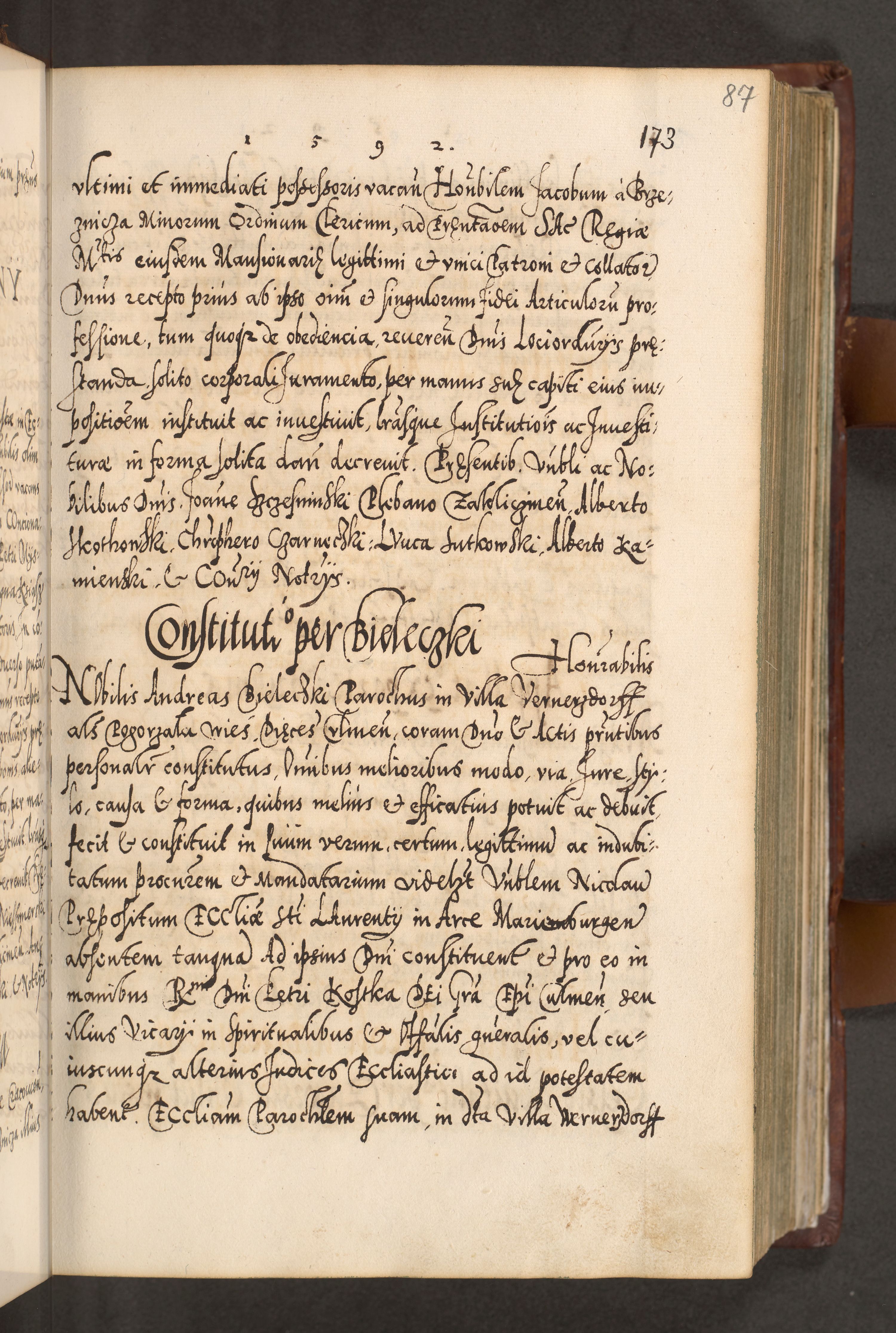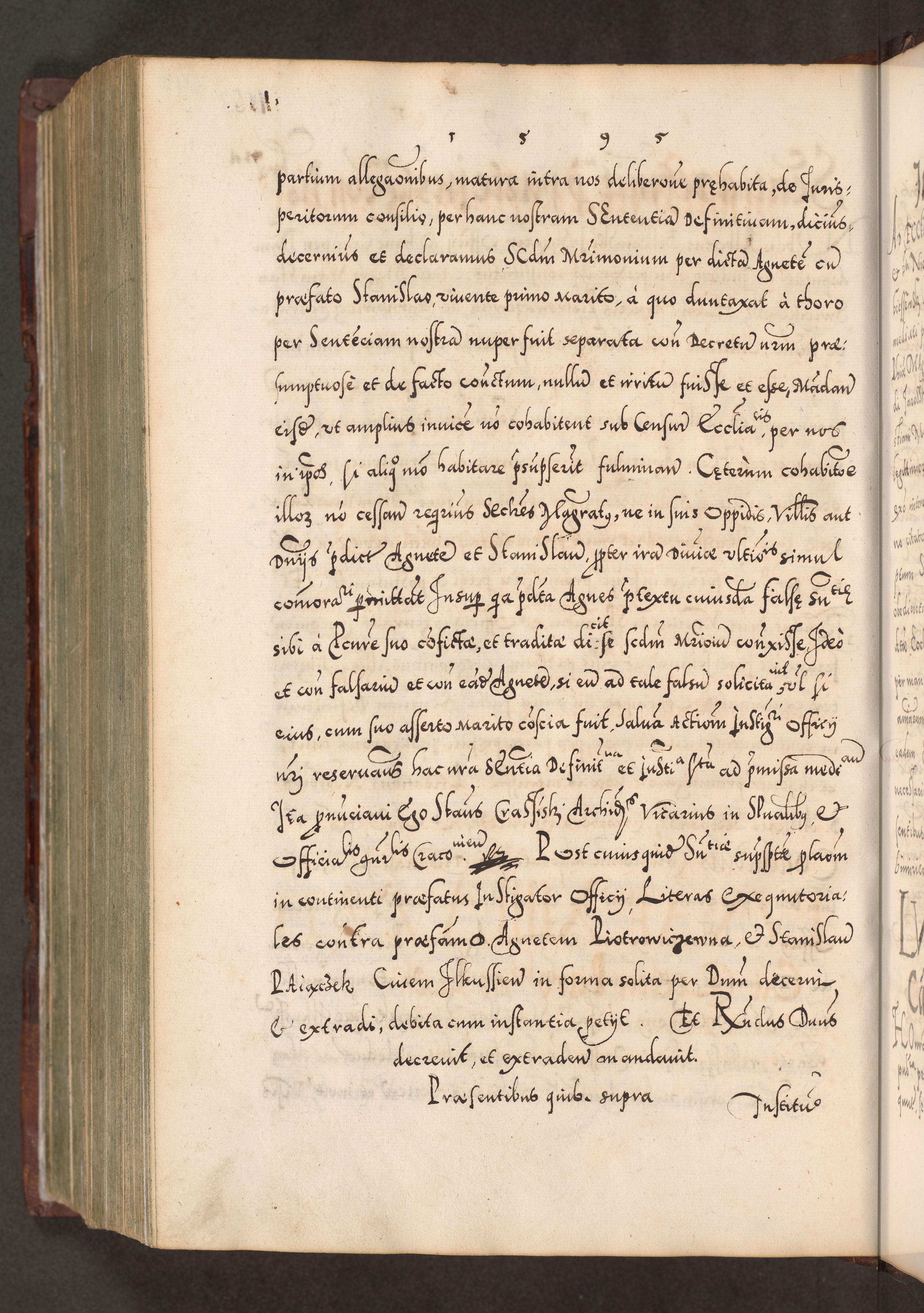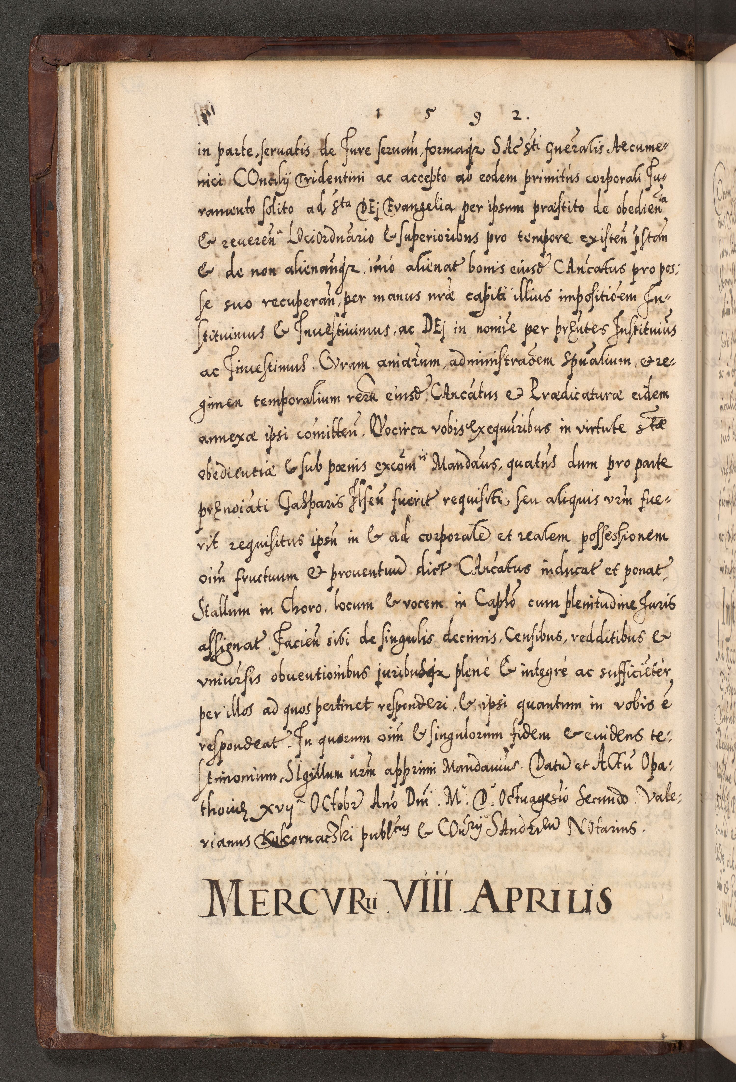 Illistrissimo et revedissimo in Christo Patre Domino Domino Georgio Rzadziwił Miserone Divina Sacrostae R. E. Tituli S. Sixti Presbitero Cardinali Duce in Olyka et Niesswiesz ad Gubernacula Ecclessiae Cracoviensis cuius administratorialem a Sancta Sede Apostolica obtinverat feliciter sedente. Acta actorum, causarum, sententiarum tam deffinitivarum quam interloquutoriarum decretorum, obligationum, quietationum, recognitionum, constitutionum procuratorum etc. coram Reverendo Domino Stanislao Crassinskz de Crasne Archidiacono Cracoviensis, Scholastico Gnesnesis, Custode Plocensis etc. Vicario et Officiali Generali Cracoviensi in Ano Domini Millesimo Quingentesimo Nonagesimo Primo cuius indictio quarta pontificatus SS. Domini Nostri Gregorii XIIII Anno I psius prio feliciter incipiut