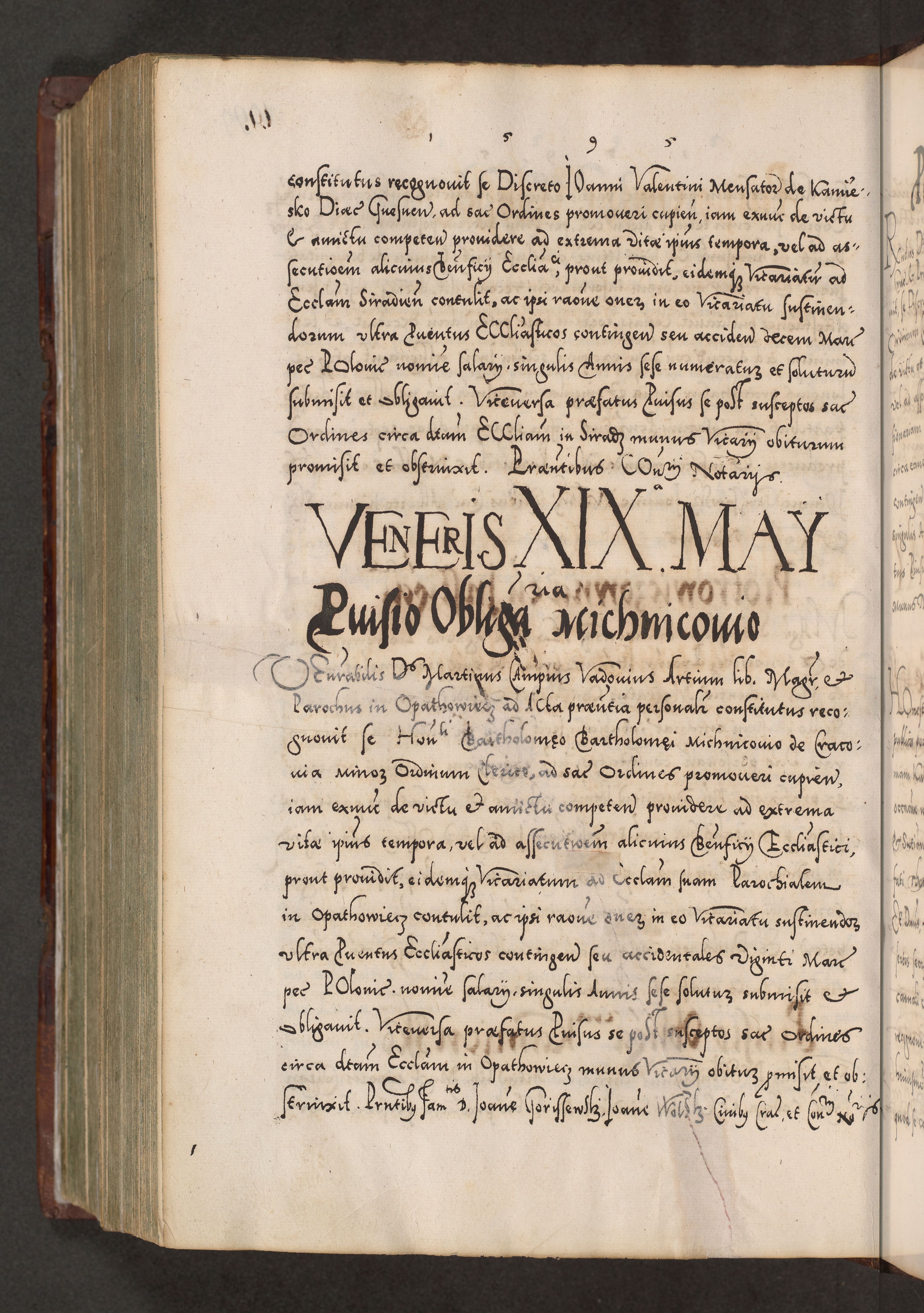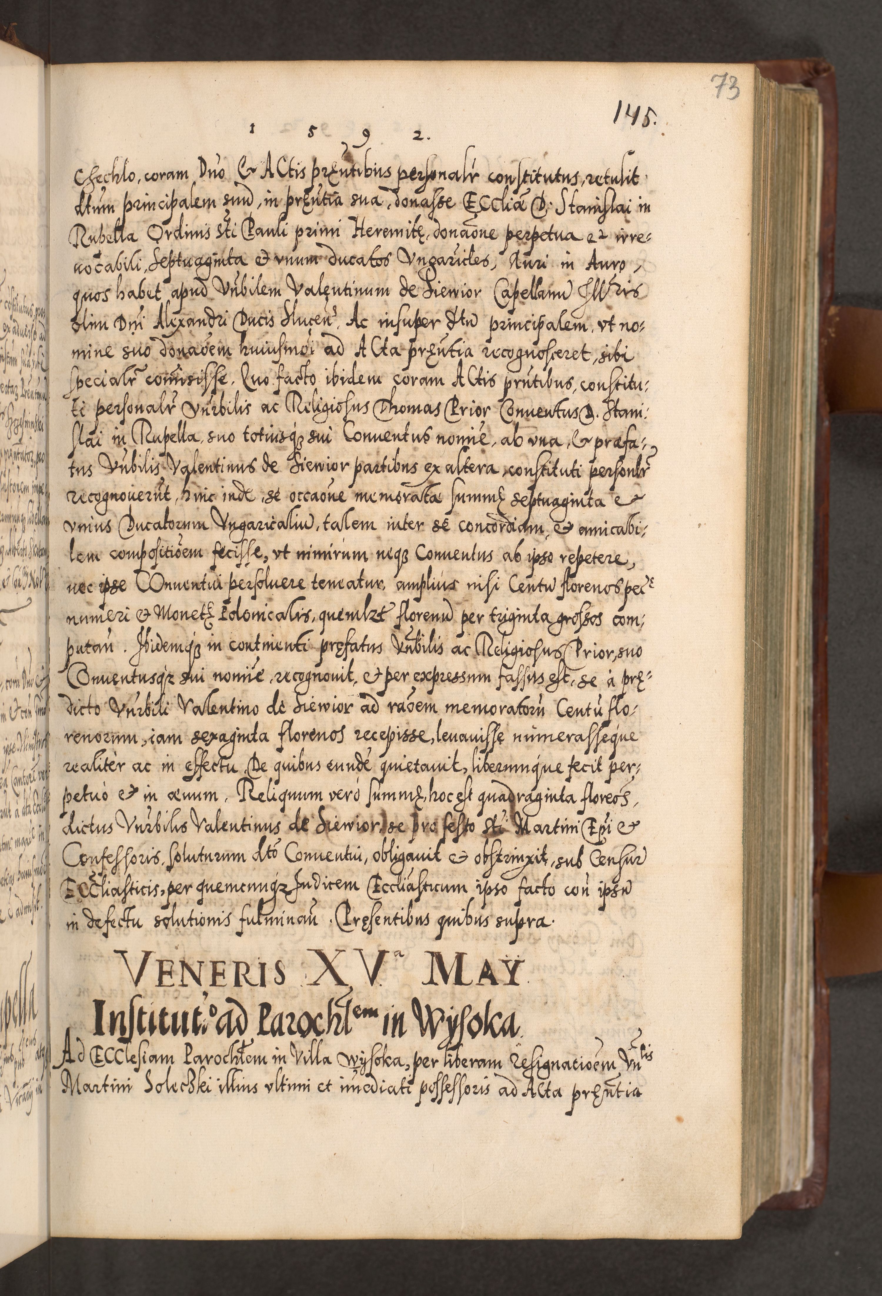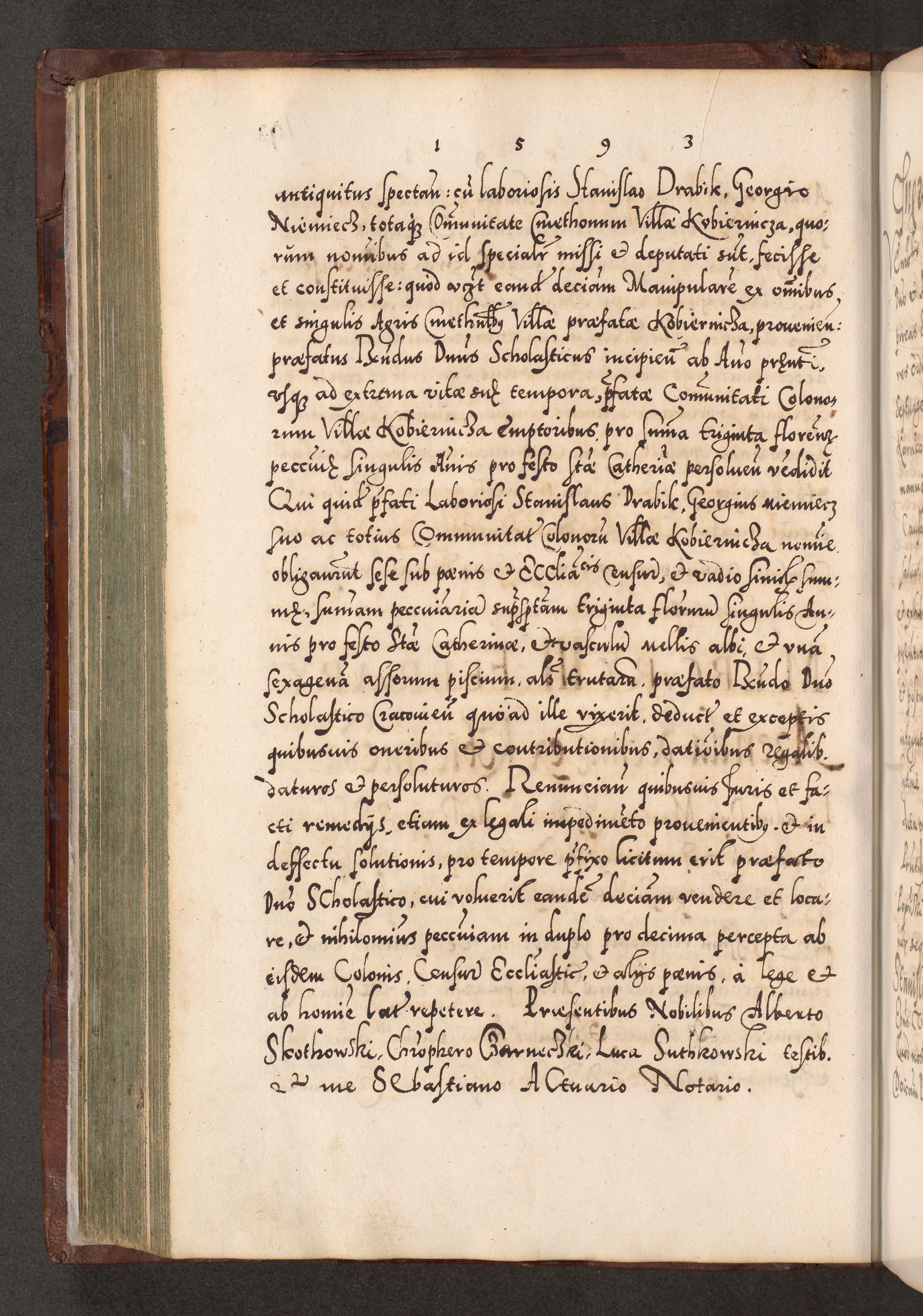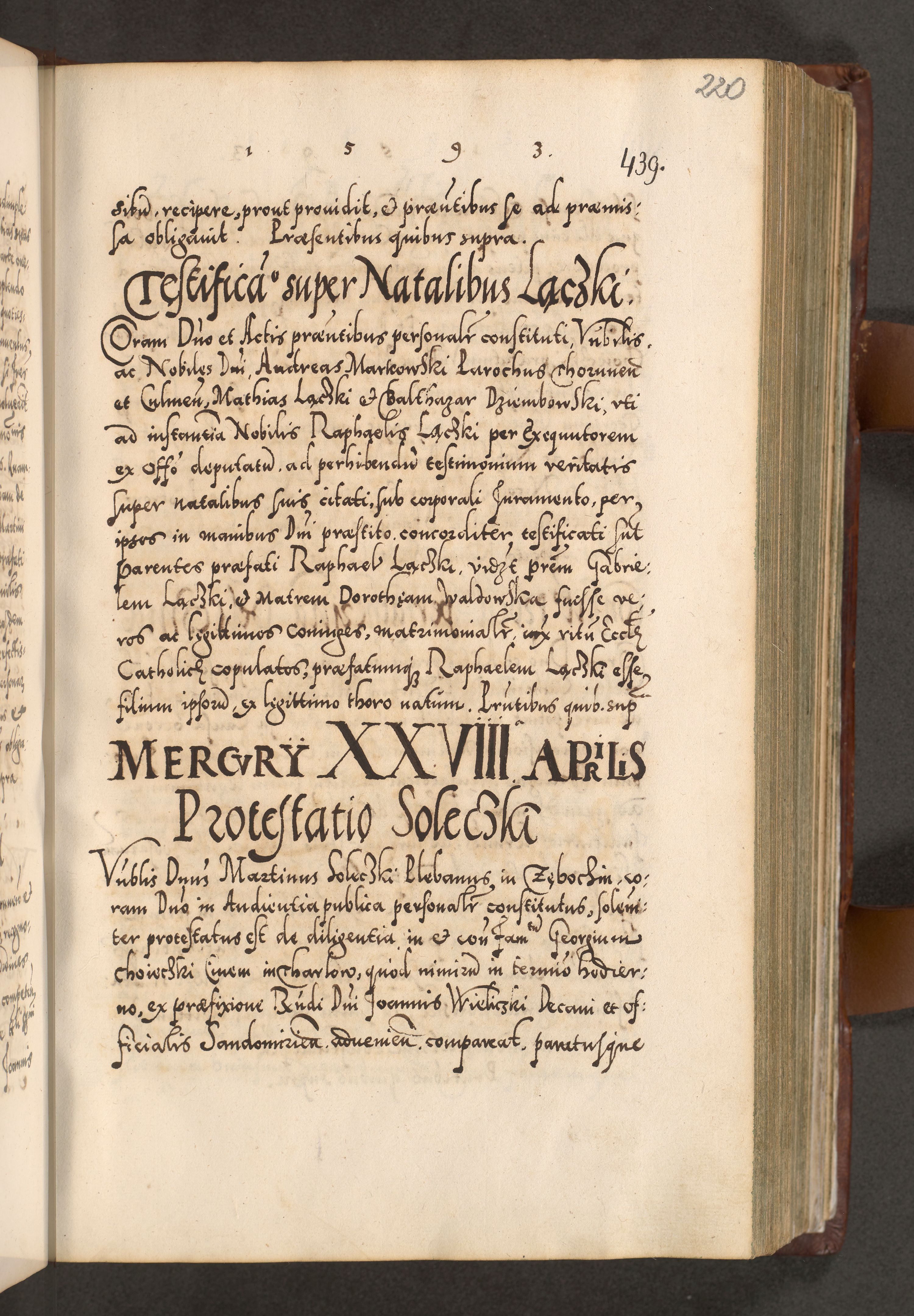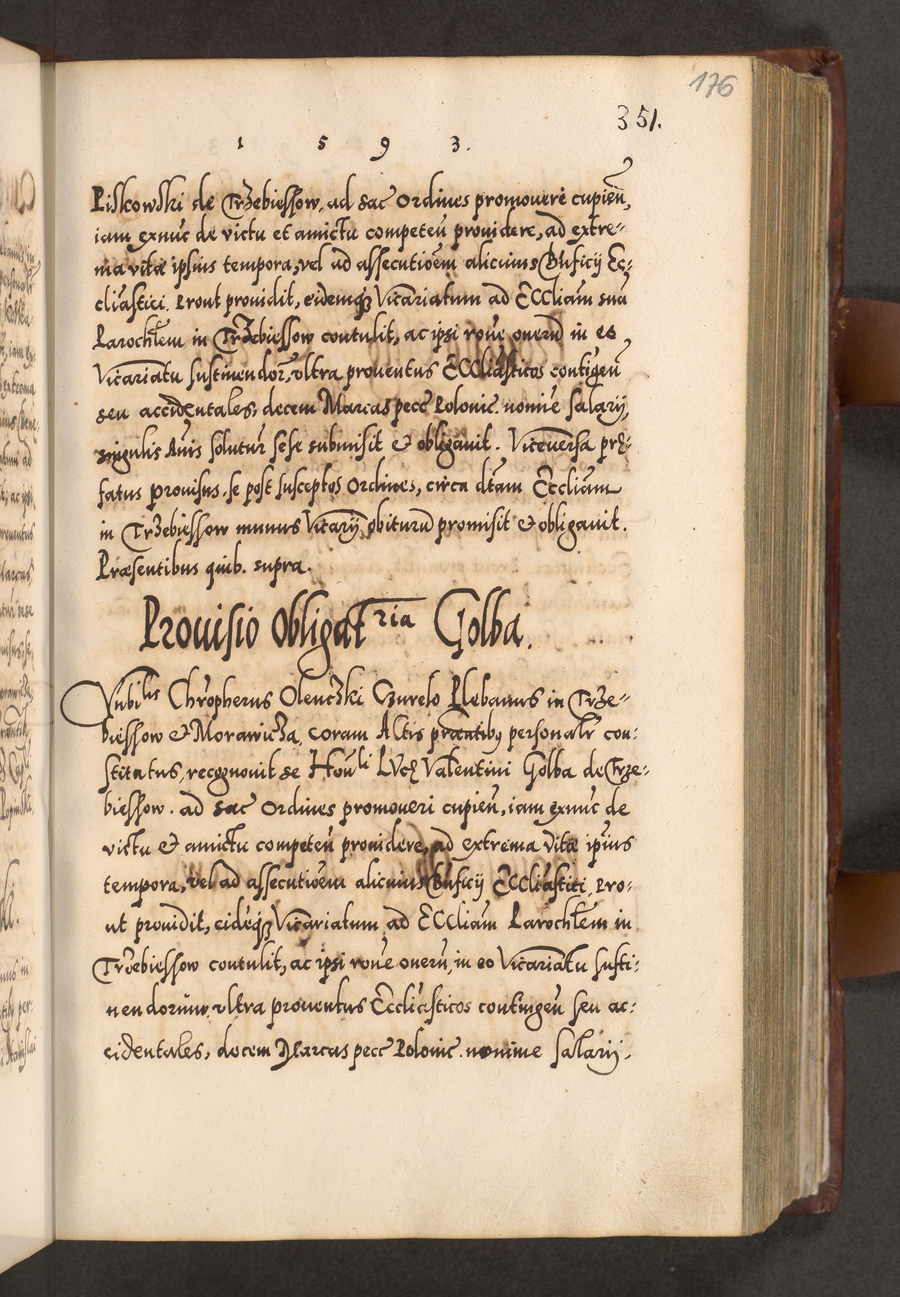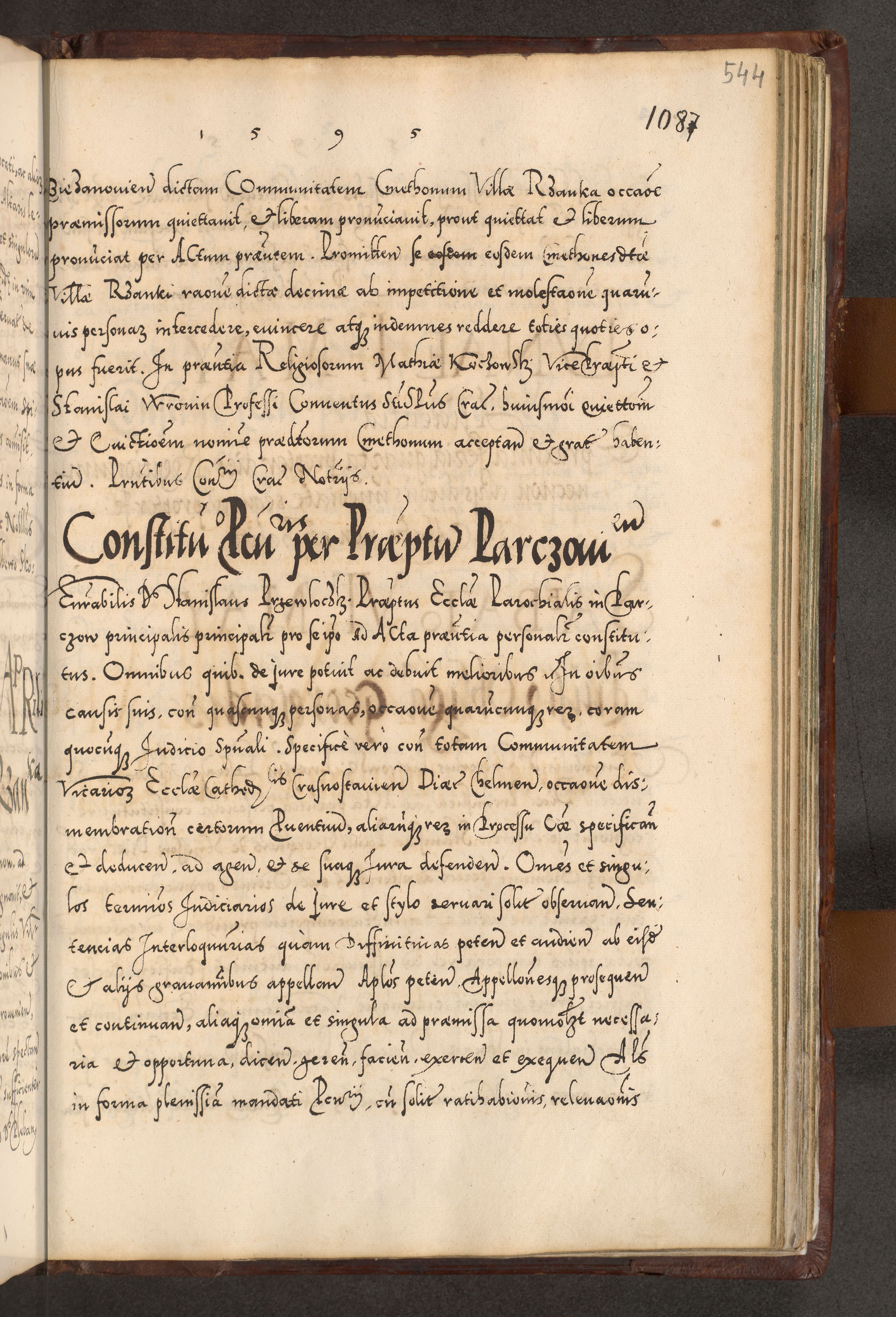 Illistrissimo et revedissimo in Christo Patre Domino Domino Georgio Rzadziwił Miserone Divina Sacrostae R. E. Tituli S. Sixti Presbitero Cardinali Duce in Olyka et Niesswiesz ad Gubernacula Ecclessiae Cracoviensis cuius administratorialem a Sancta Sede Apostolica obtinverat feliciter sedente. Acta actorum, causarum, sententiarum tam deffinitivarum quam interloquutoriarum decretorum, obligationum, quietationum, recognitionum, constitutionum procuratorum etc. coram Reverendo Domino Stanislao Crassinskz de Crasne Archidiacono Cracoviensis, Scholastico Gnesnesis, Custode Plocensis etc. Vicario et Officiali Generali Cracoviensi in Ano Domini Millesimo Quingentesimo Nonagesimo Primo cuius indictio quarta pontificatus SS. Domini Nostri Gregorii XIIII Anno I psius prio feliciter incipiut