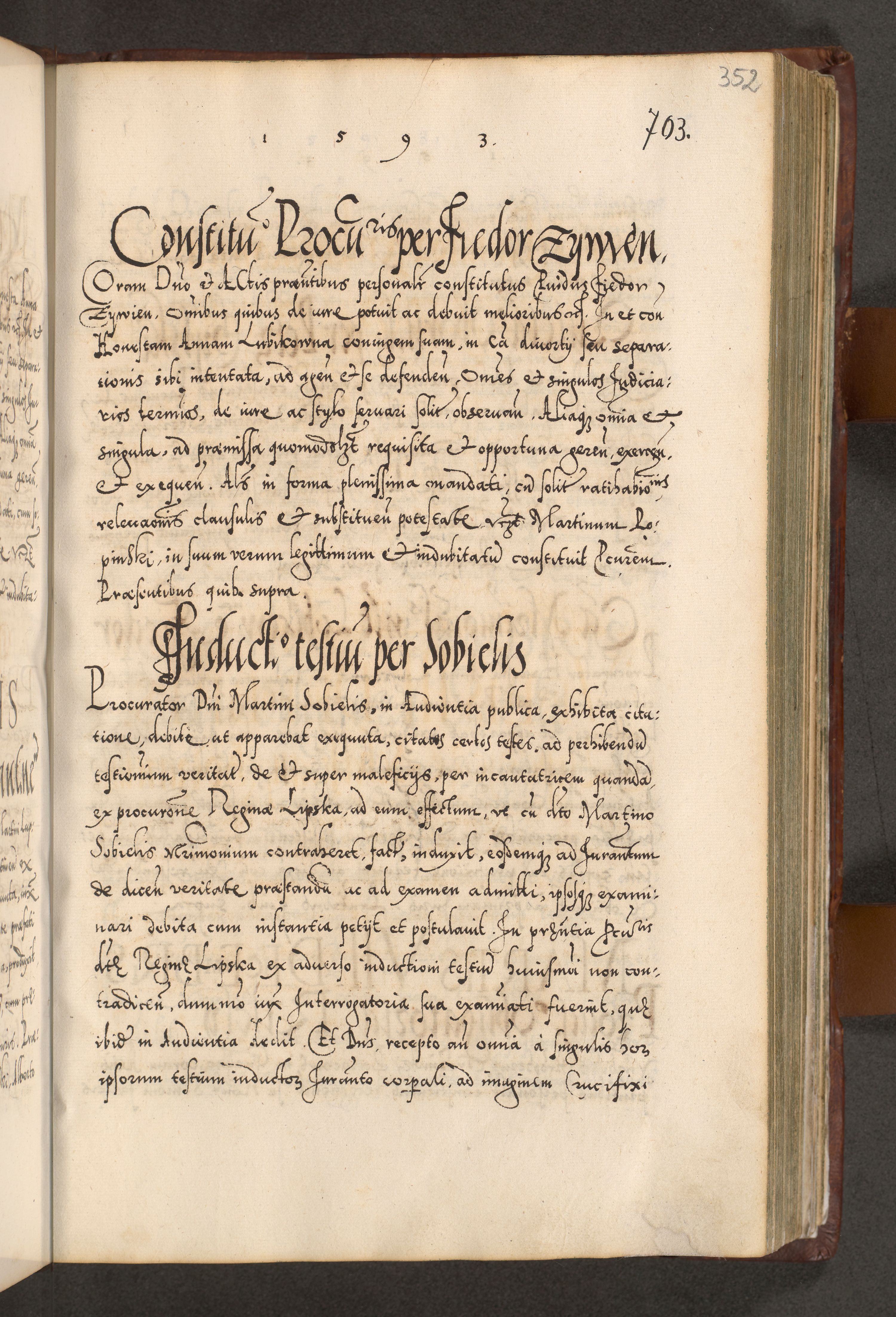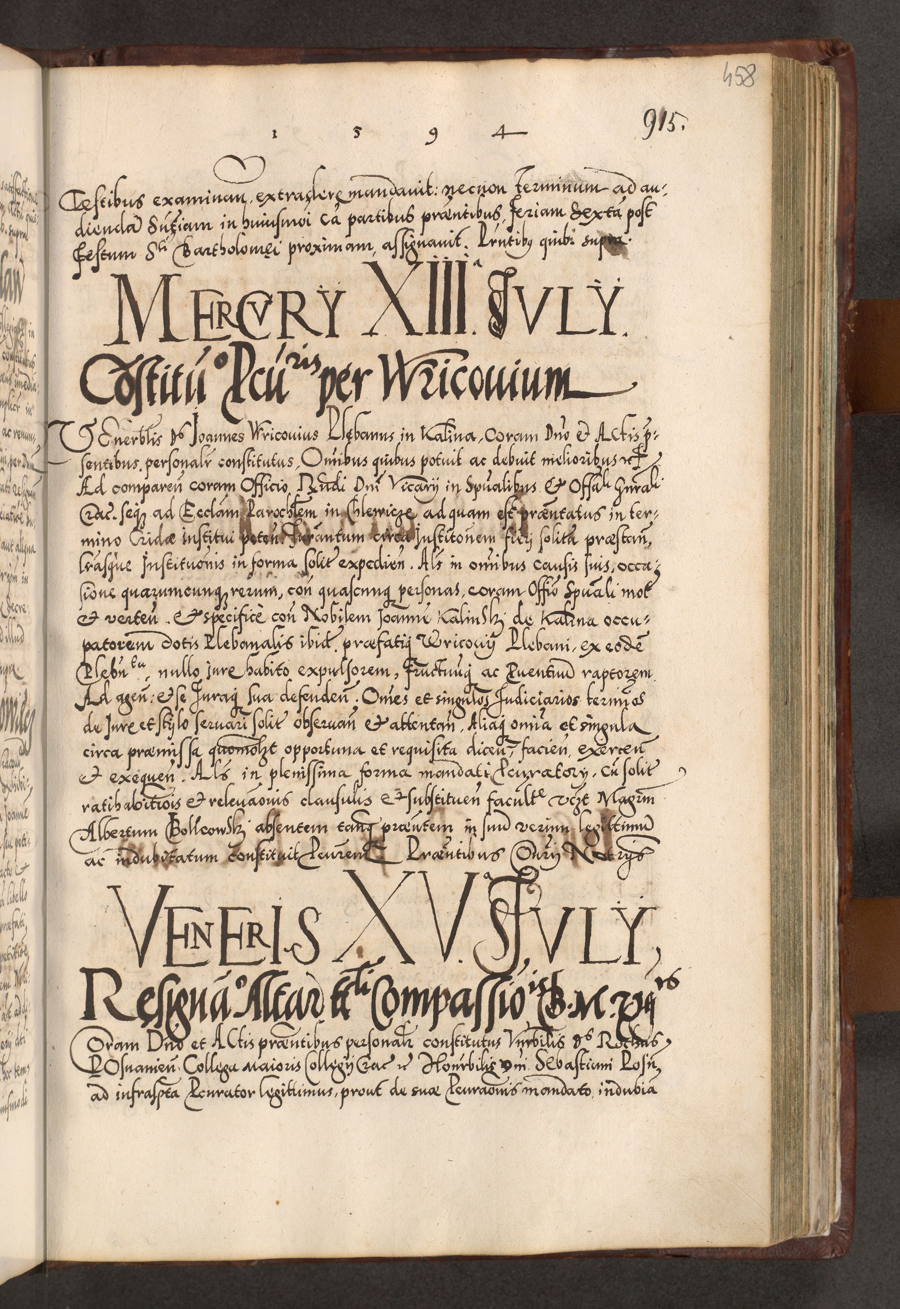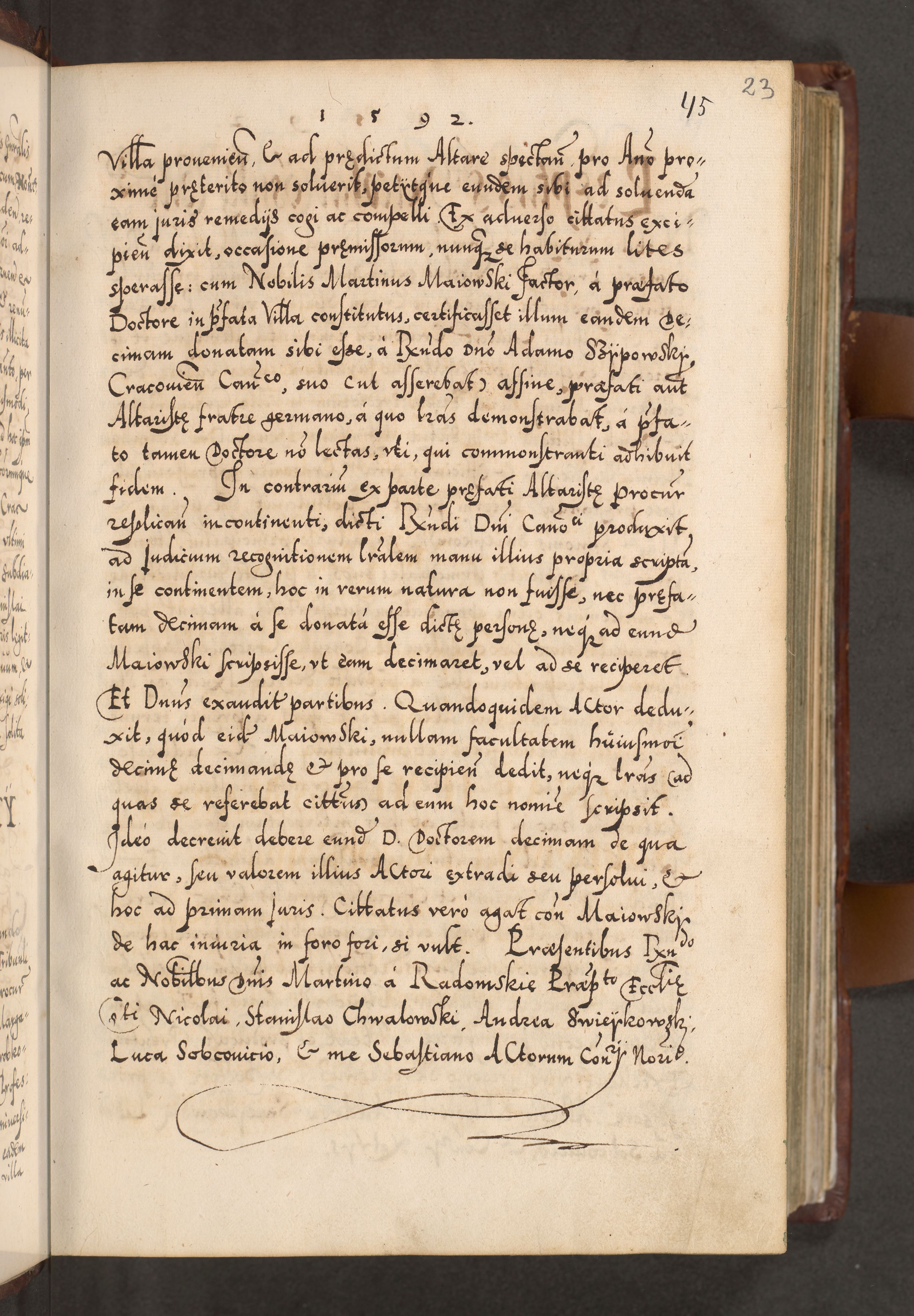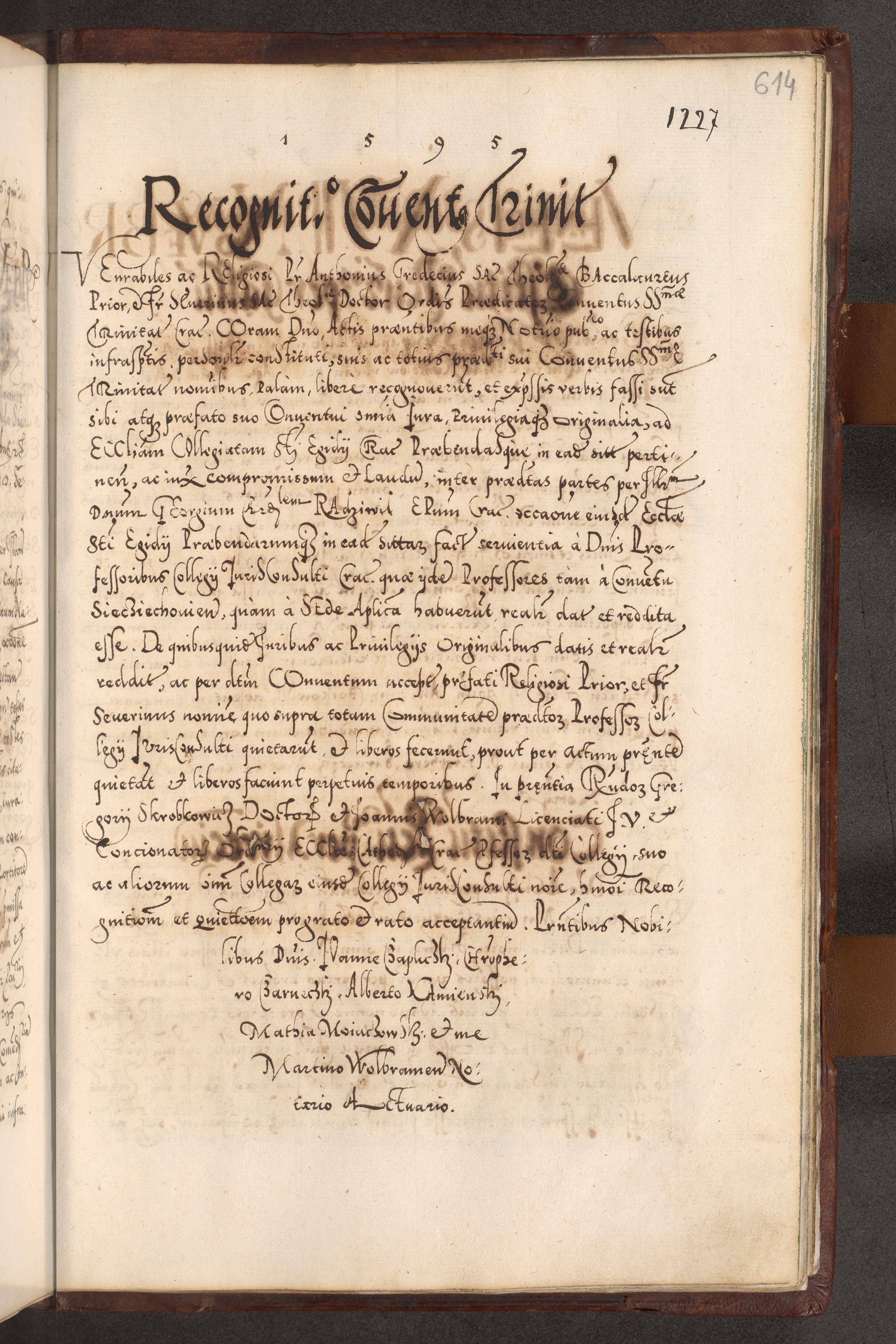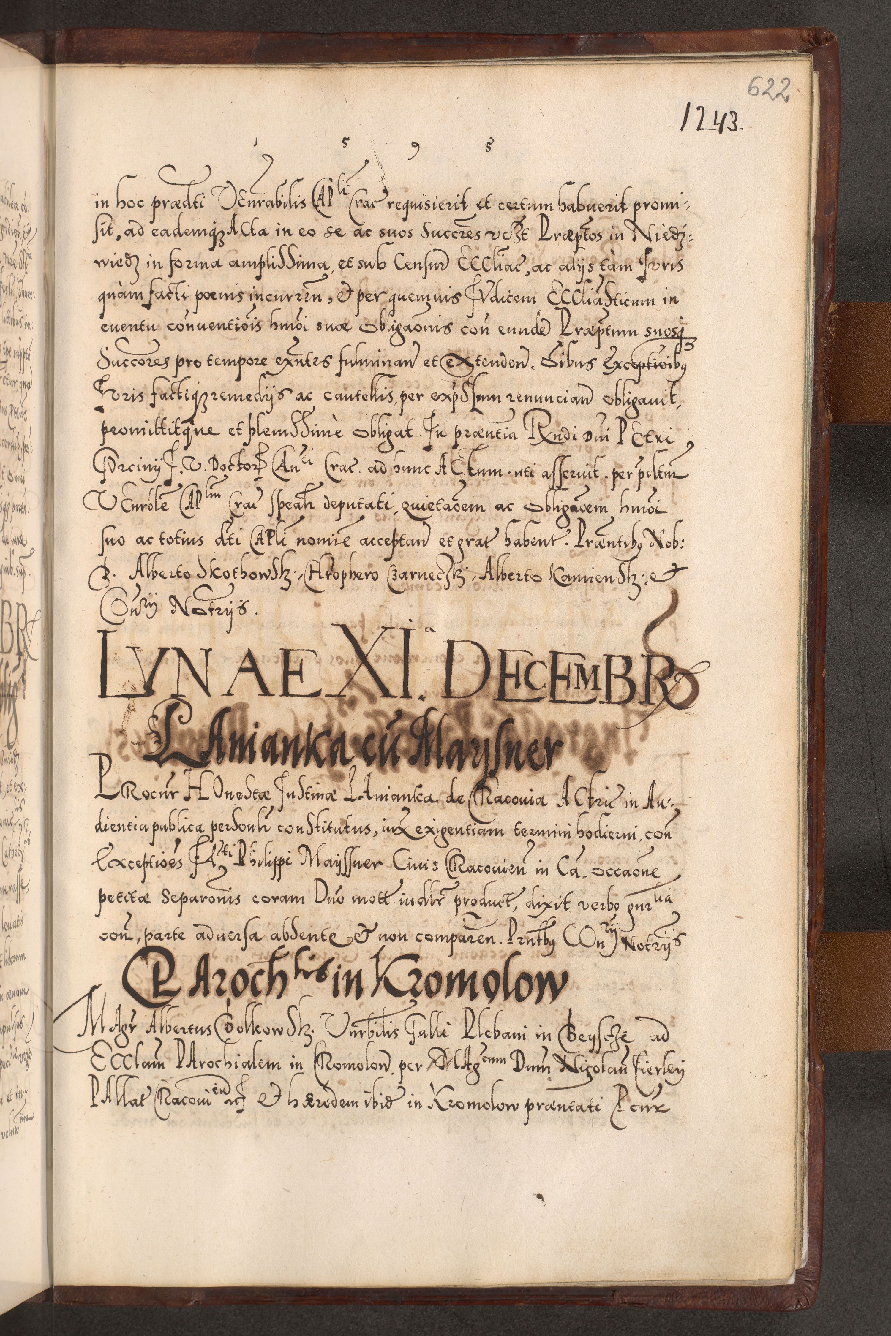 Illistrissimo et revedissimo in Christo Patre Domino Domino Georgio Rzadziwił Miserone Divina Sacrostae R. E. Tituli S. Sixti Presbitero Cardinali Duce in Olyka et Niesswiesz ad Gubernacula Ecclessiae Cracoviensis cuius administratorialem a Sancta Sede Apostolica obtinverat feliciter sedente. Acta actorum, causarum, sententiarum tam deffinitivarum quam interloquutoriarum decretorum, obligationum, quietationum, recognitionum, constitutionum procuratorum etc. coram Reverendo Domino Stanislao Crassinskz de Crasne Archidiacono Cracoviensis, Scholastico Gnesnesis, Custode Plocensis etc. Vicario et Officiali Generali Cracoviensi in Ano Domini Millesimo Quingentesimo Nonagesimo Primo cuius indictio quarta pontificatus SS. Domini Nostri Gregorii XIIII Anno I psius prio feliciter incipiut