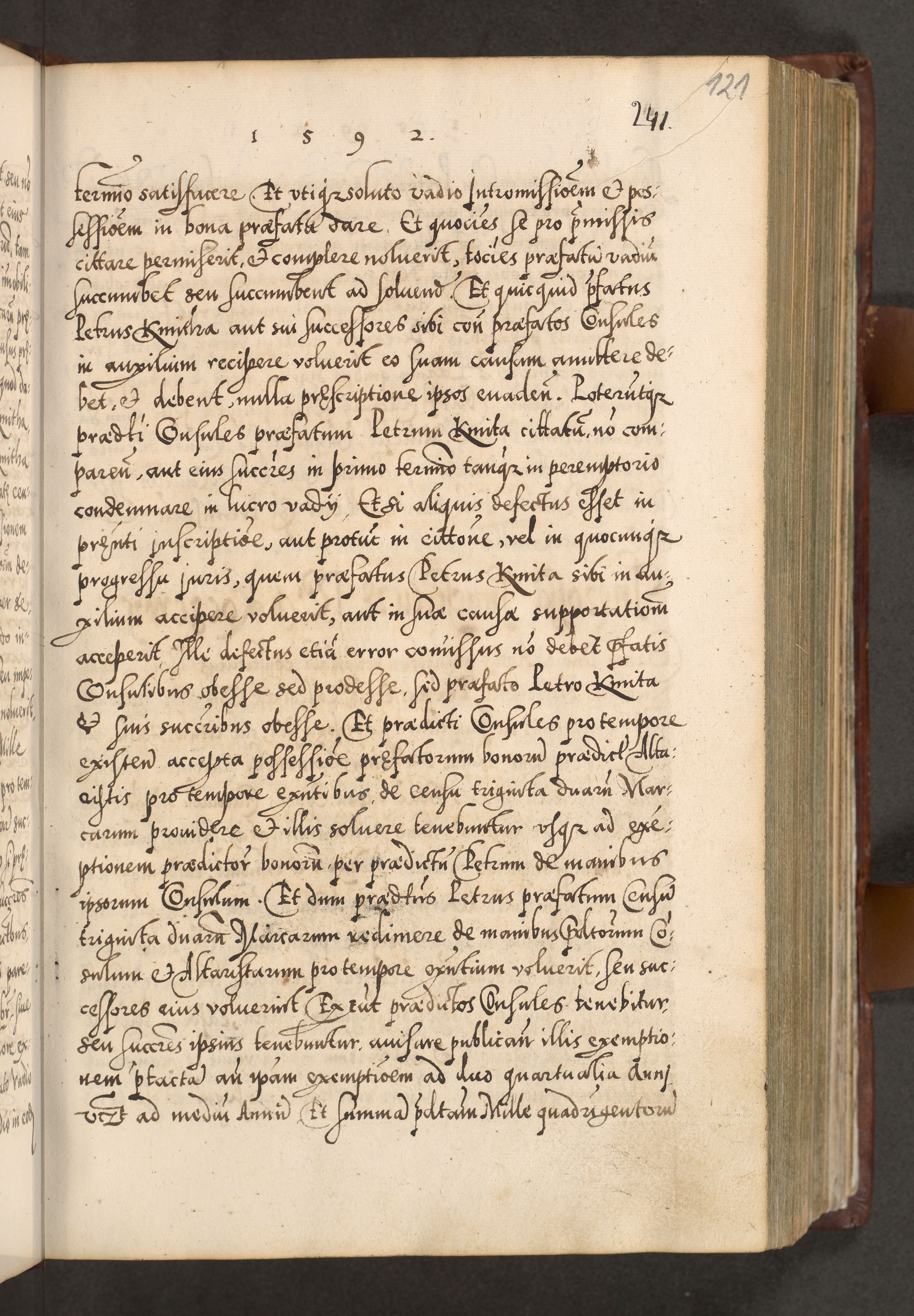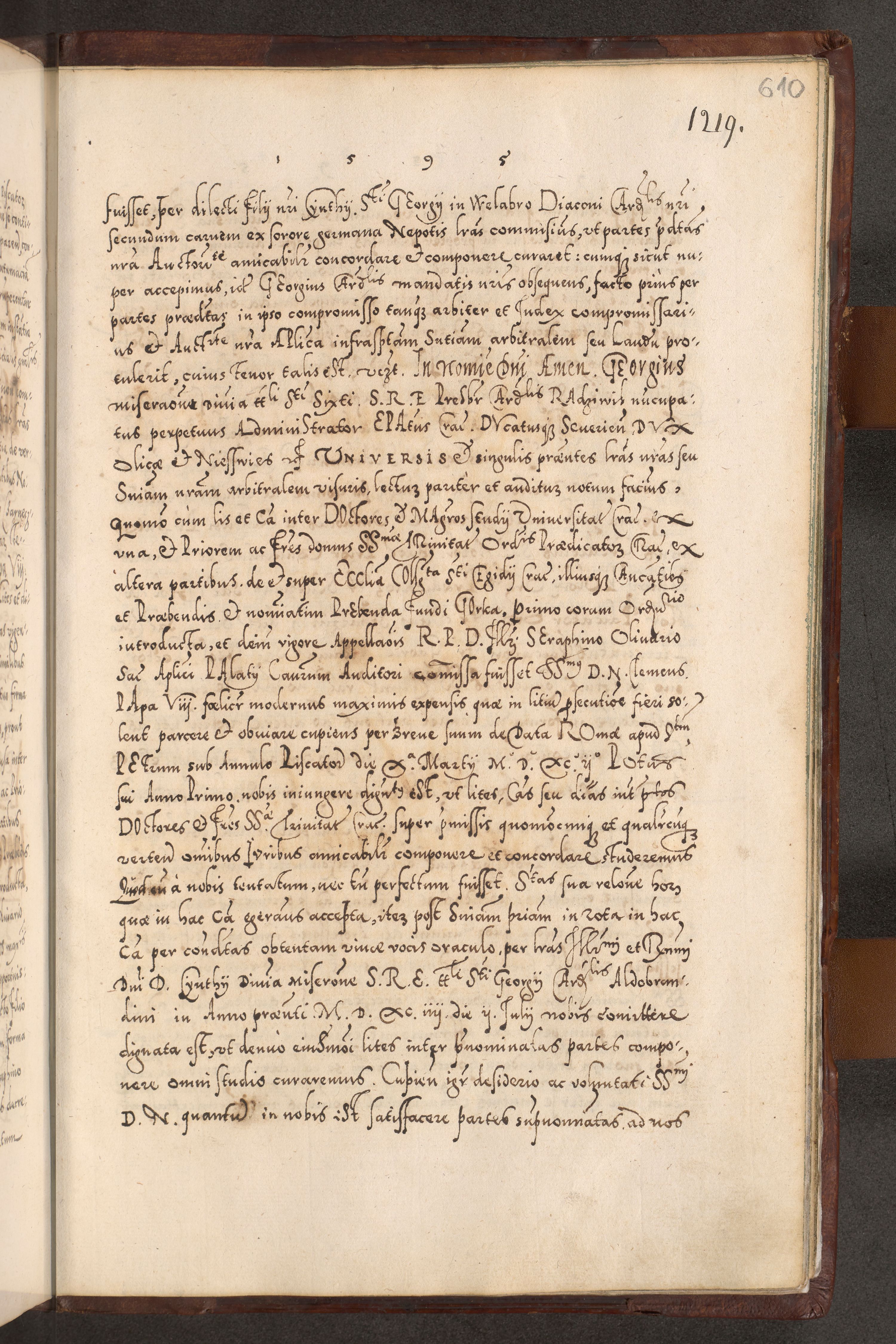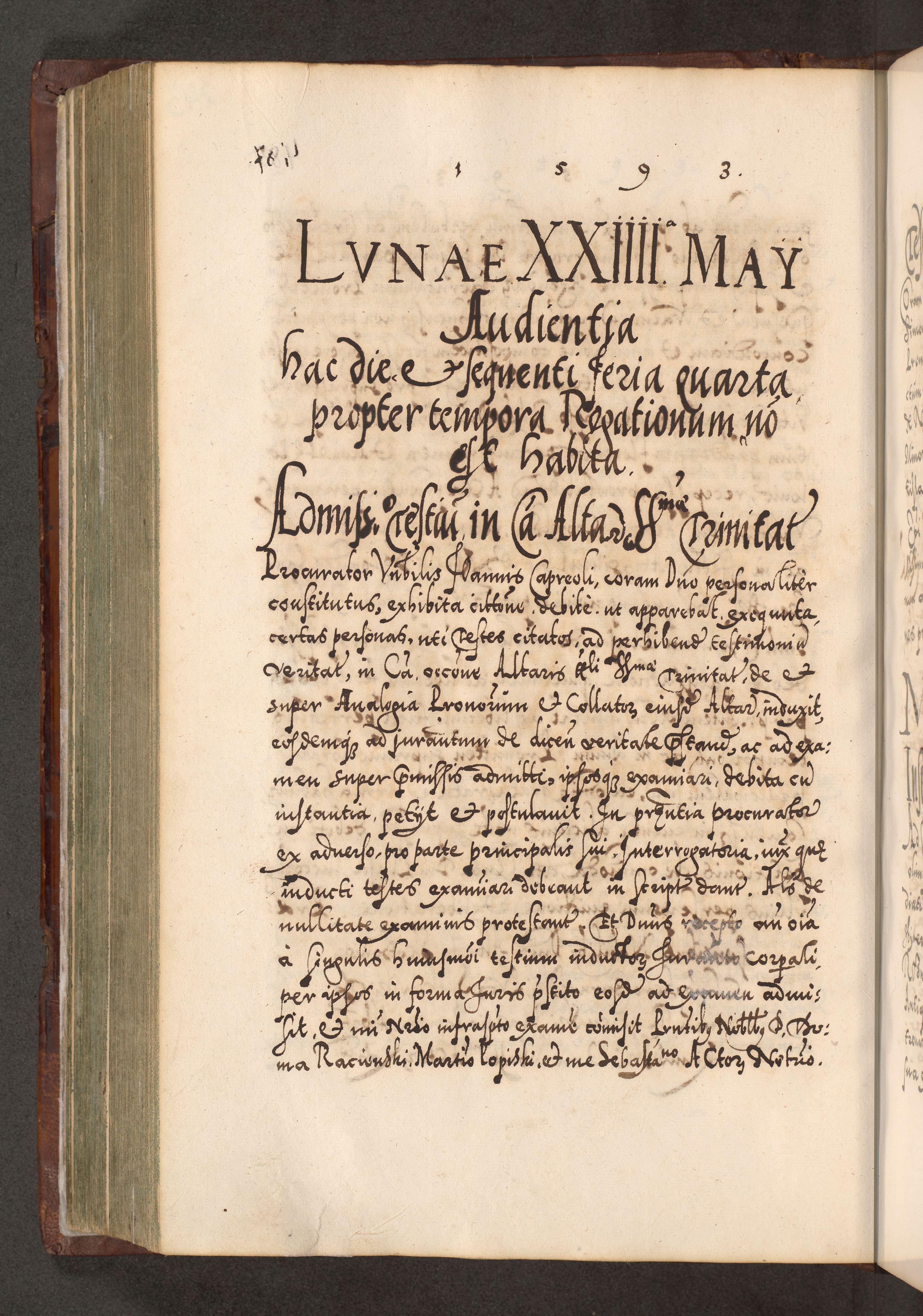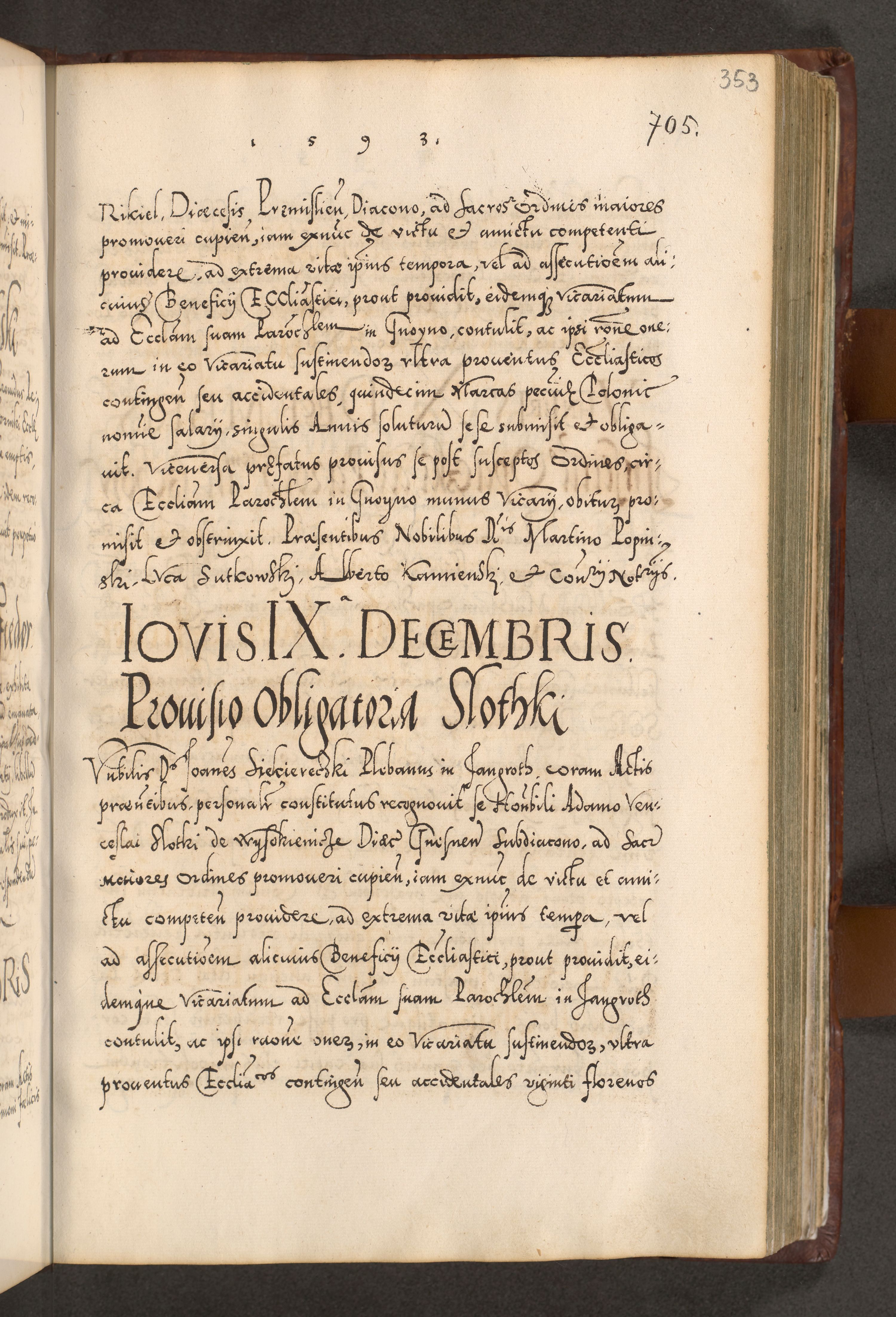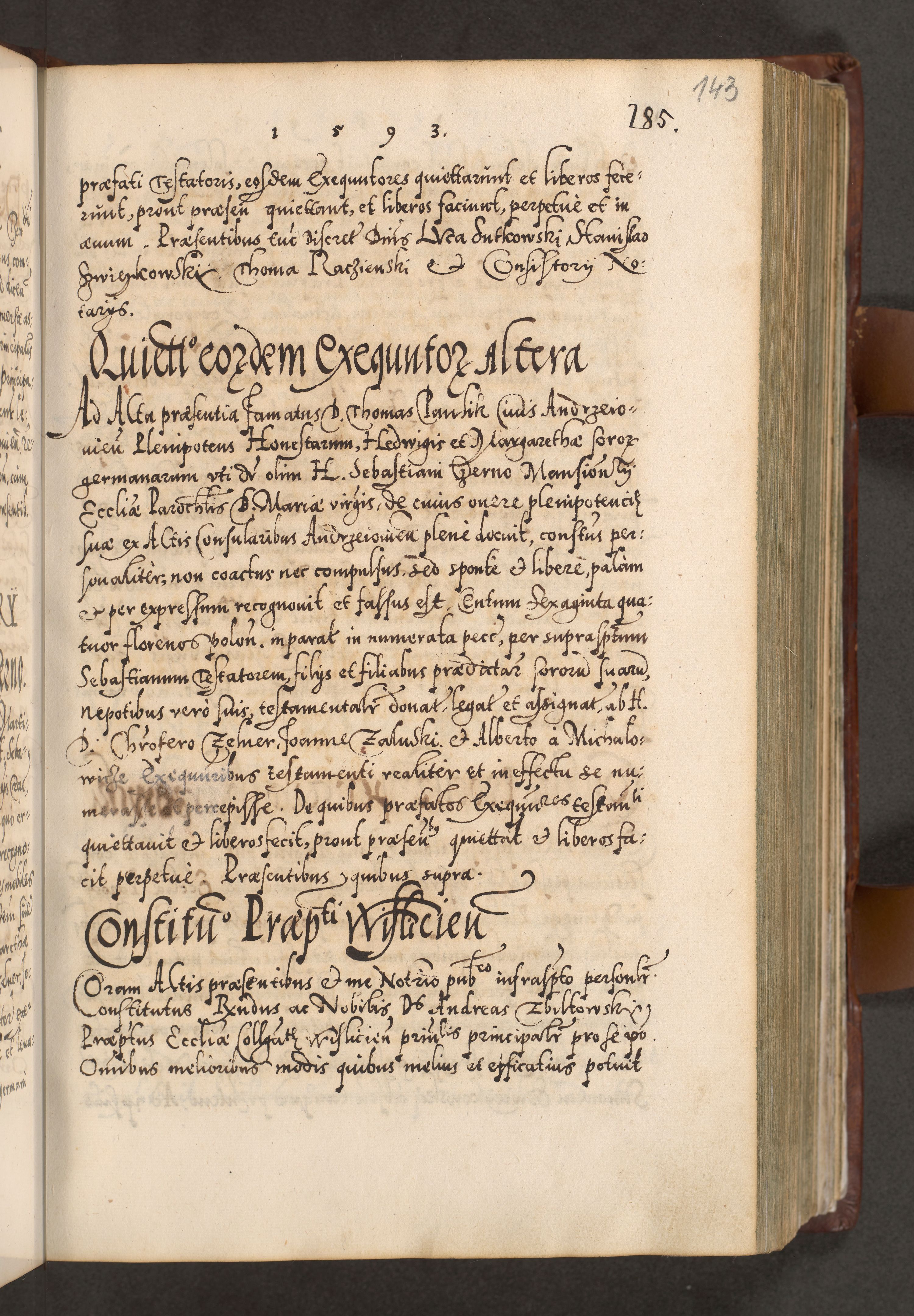 Illistrissimo et revedissimo in Christo Patre Domino Domino Georgio Rzadziwił Miserone Divina Sacrostae R. E. Tituli S. Sixti Presbitero Cardinali Duce in Olyka et Niesswiesz ad Gubernacula Ecclessiae Cracoviensis cuius administratorialem a Sancta Sede Apostolica obtinverat feliciter sedente. Acta actorum, causarum, sententiarum tam deffinitivarum quam interloquutoriarum decretorum, obligationum, quietationum, recognitionum, constitutionum procuratorum etc. coram Reverendo Domino Stanislao Crassinskz de Crasne Archidiacono Cracoviensis, Scholastico Gnesnesis, Custode Plocensis etc. Vicario et Officiali Generali Cracoviensi in Ano Domini Millesimo Quingentesimo Nonagesimo Primo cuius indictio quarta pontificatus SS. Domini Nostri Gregorii XIIII Anno I psius prio feliciter incipiut