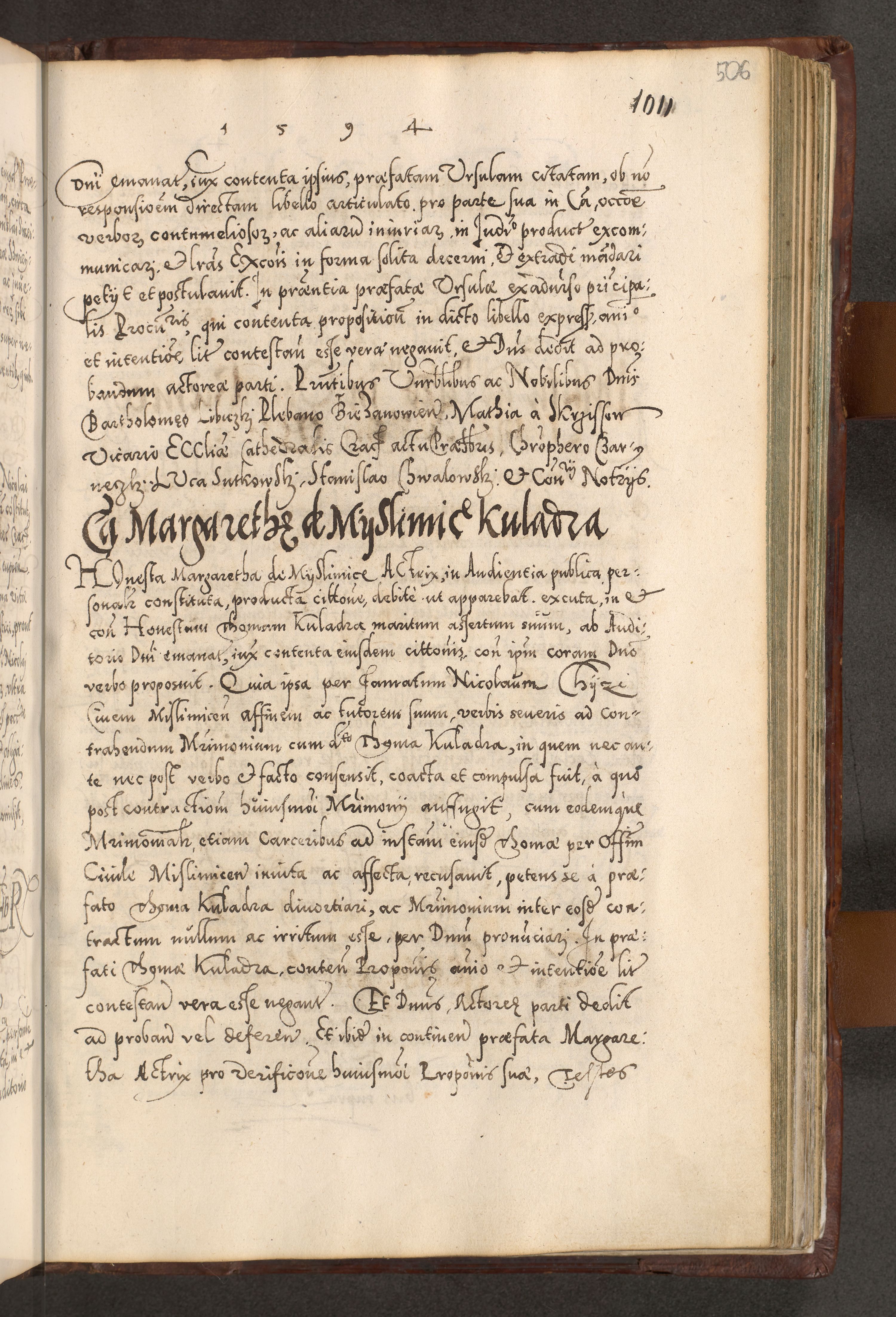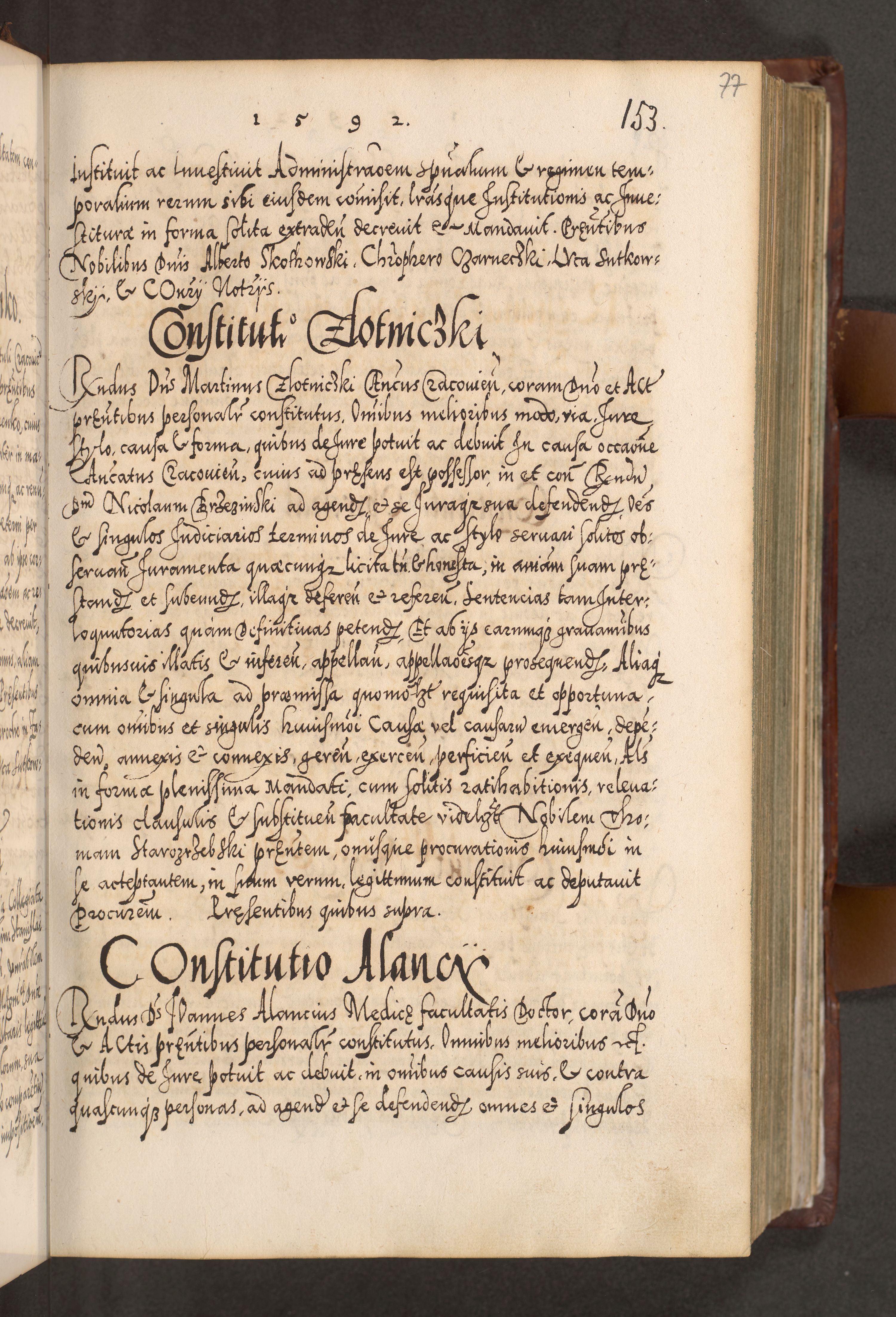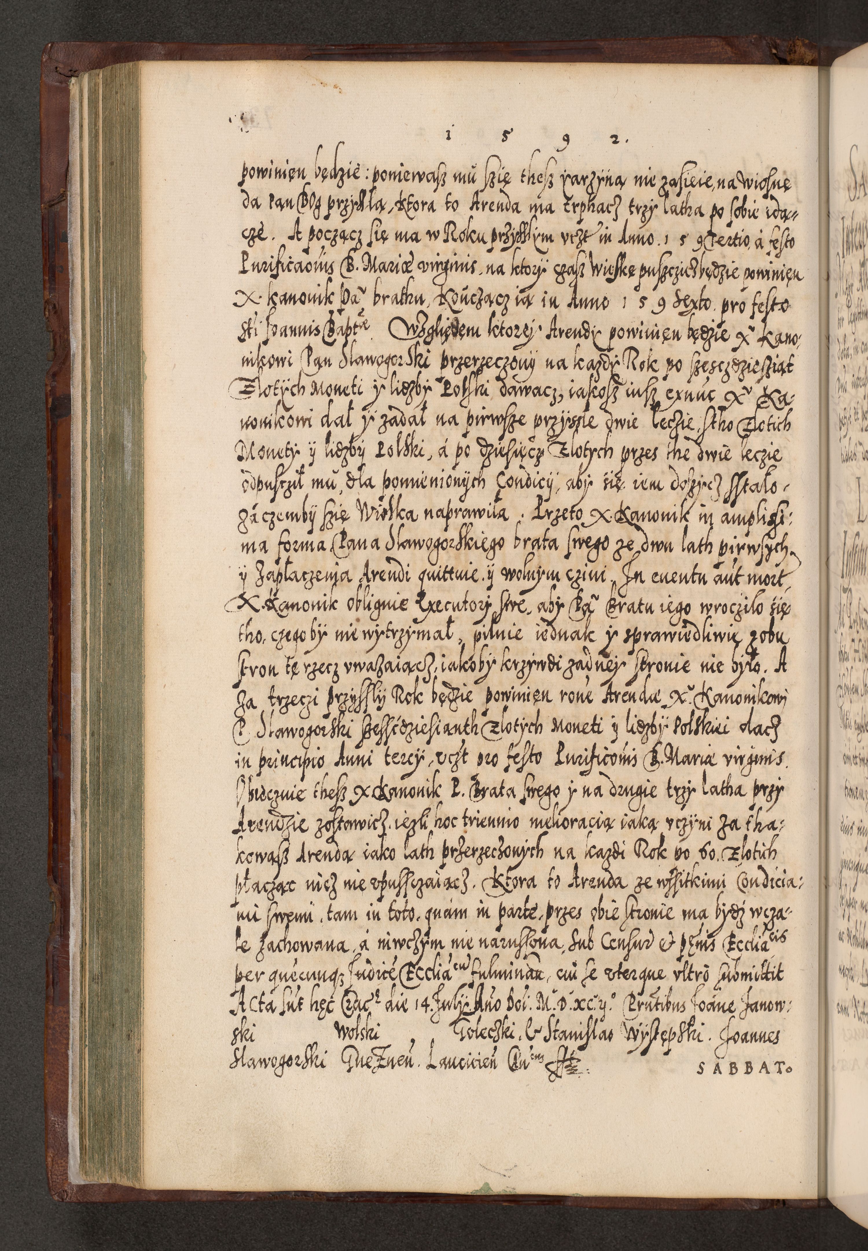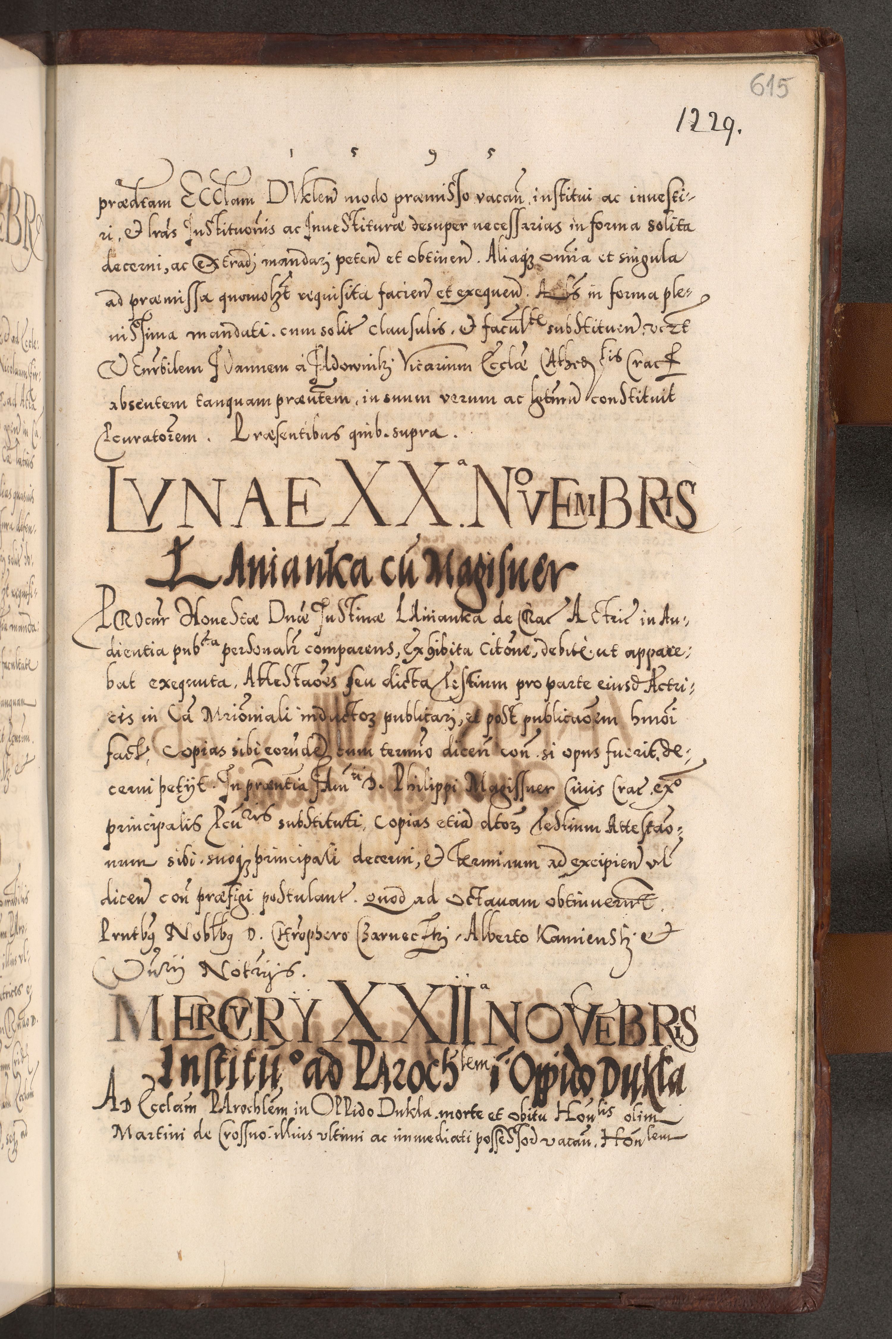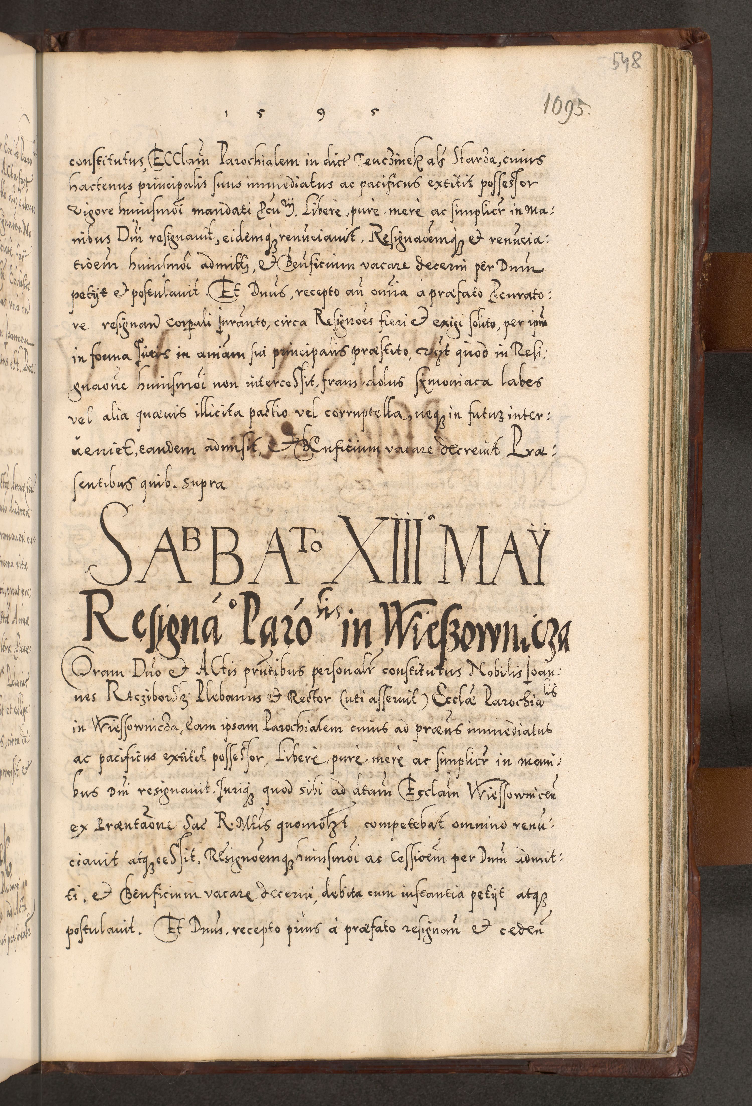 Illistrissimo et revedissimo in Christo Patre Domino Domino Georgio Rzadziwił Miserone Divina Sacrostae R. E. Tituli S. Sixti Presbitero Cardinali Duce in Olyka et Niesswiesz ad Gubernacula Ecclessiae Cracoviensis cuius administratorialem a Sancta Sede Apostolica obtinverat feliciter sedente. Acta actorum, causarum, sententiarum tam deffinitivarum quam interloquutoriarum decretorum, obligationum, quietationum, recognitionum, constitutionum procuratorum etc. coram Reverendo Domino Stanislao Crassinskz de Crasne Archidiacono Cracoviensis, Scholastico Gnesnesis, Custode Plocensis etc. Vicario et Officiali Generali Cracoviensi in Ano Domini Millesimo Quingentesimo Nonagesimo Primo cuius indictio quarta pontificatus SS. Domini Nostri Gregorii XIIII Anno I psius prio feliciter incipiut