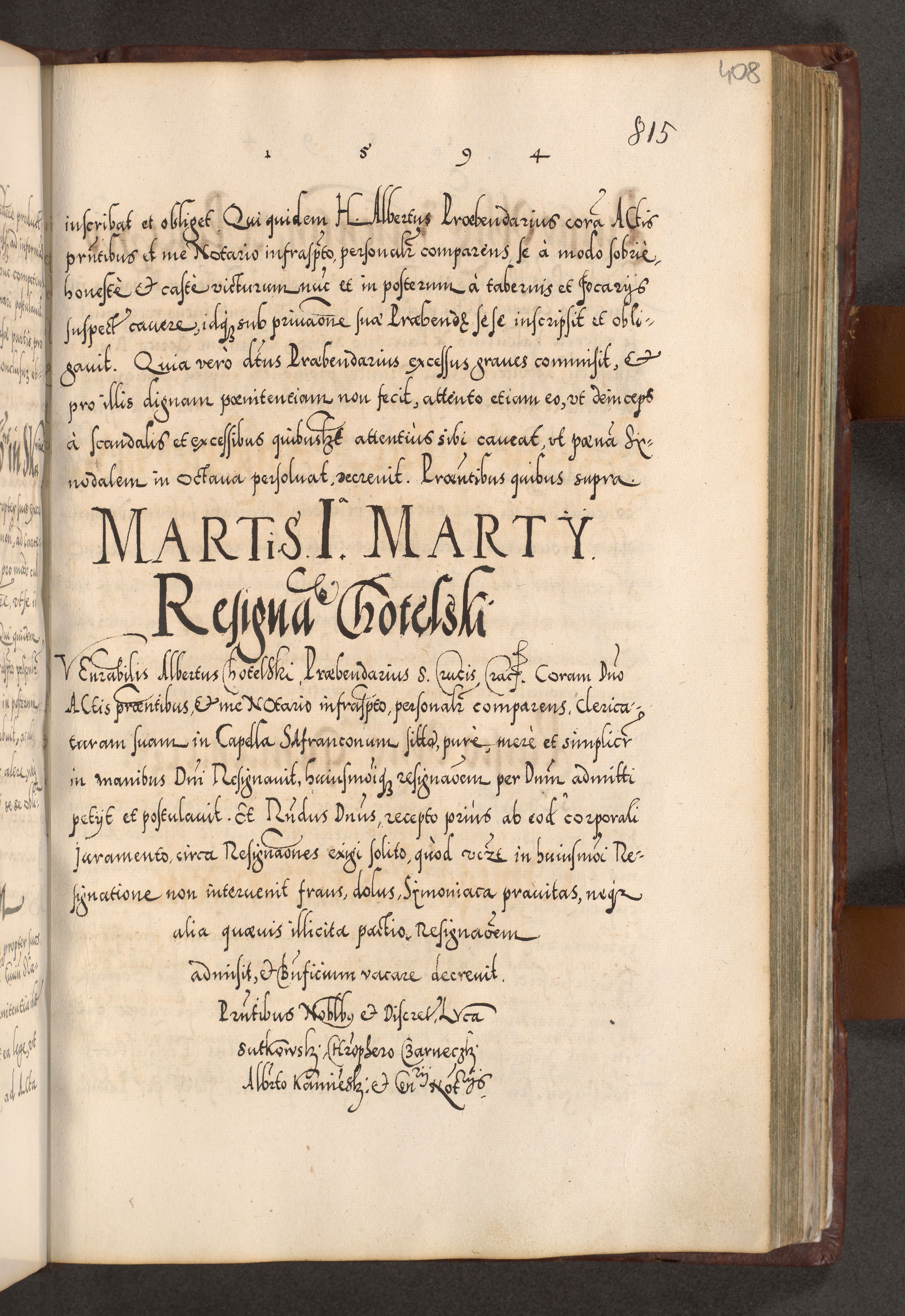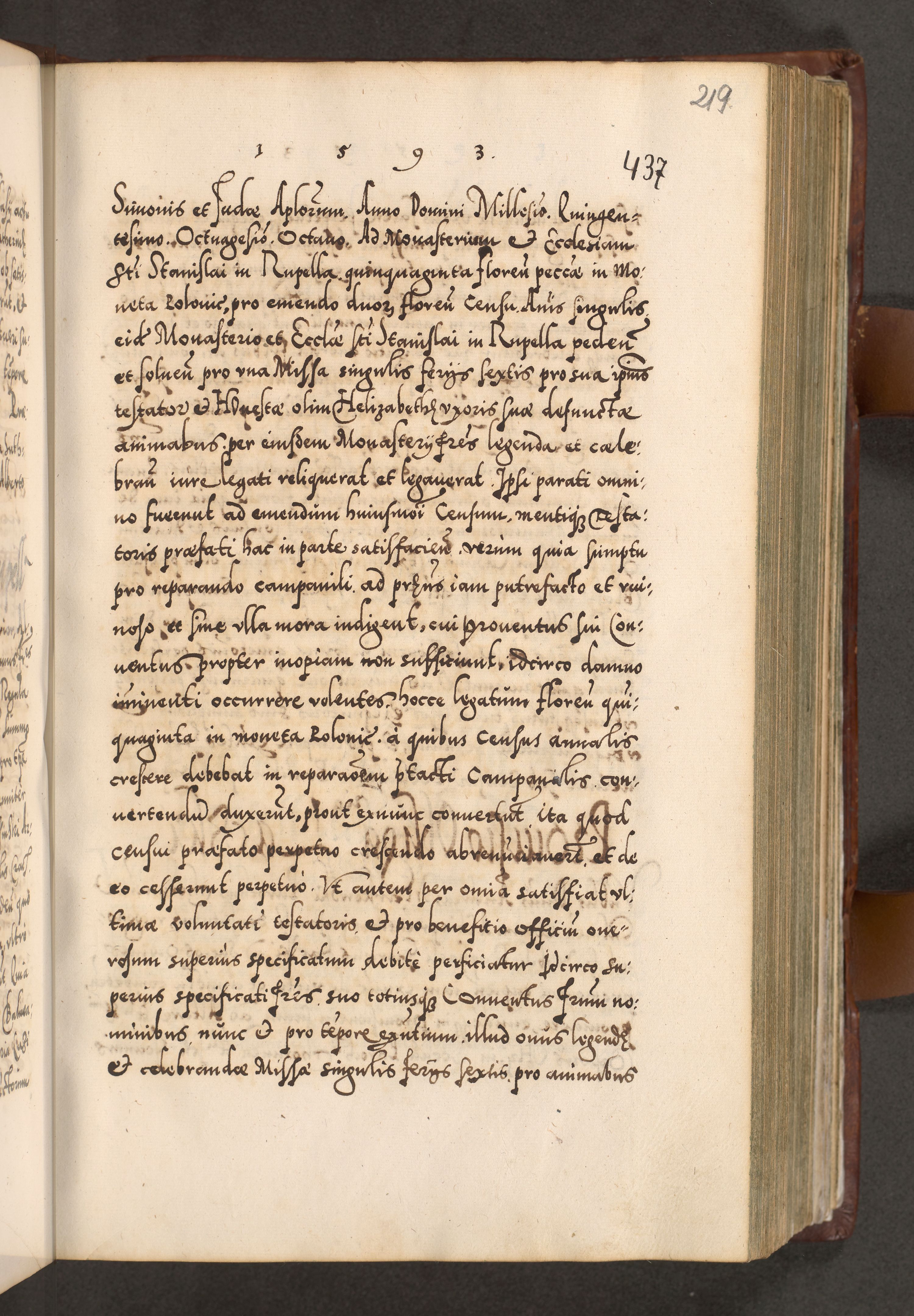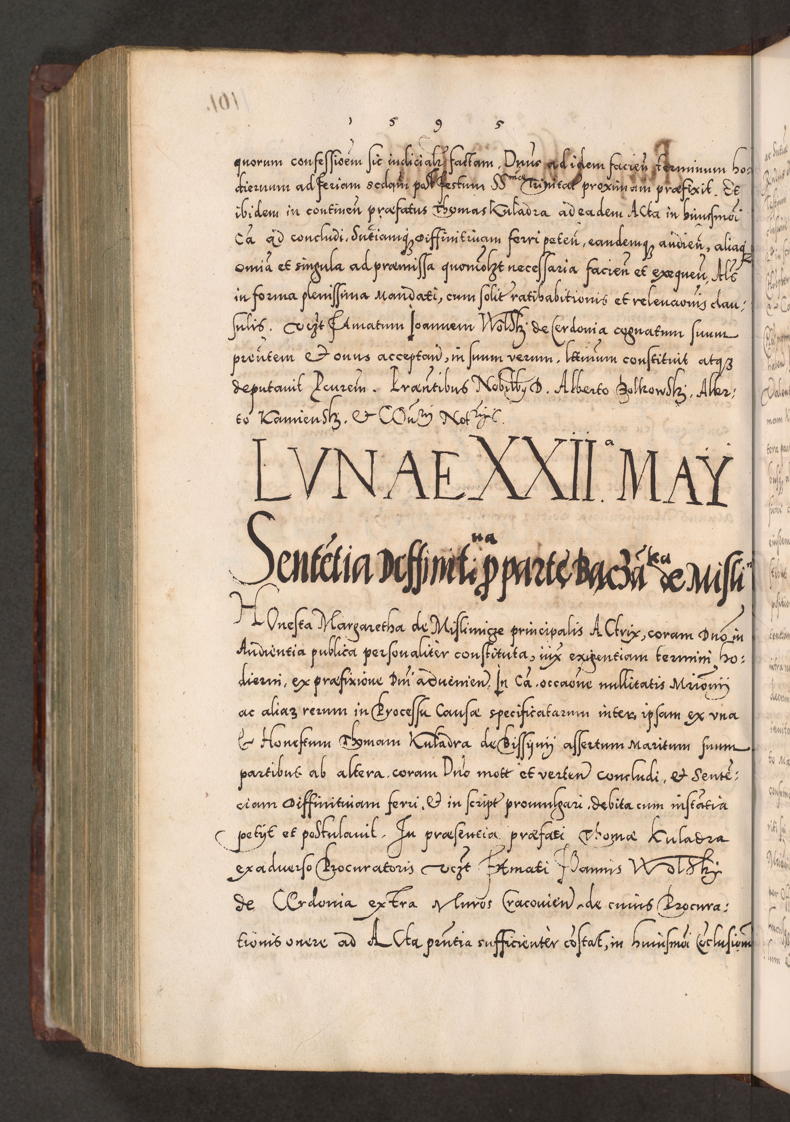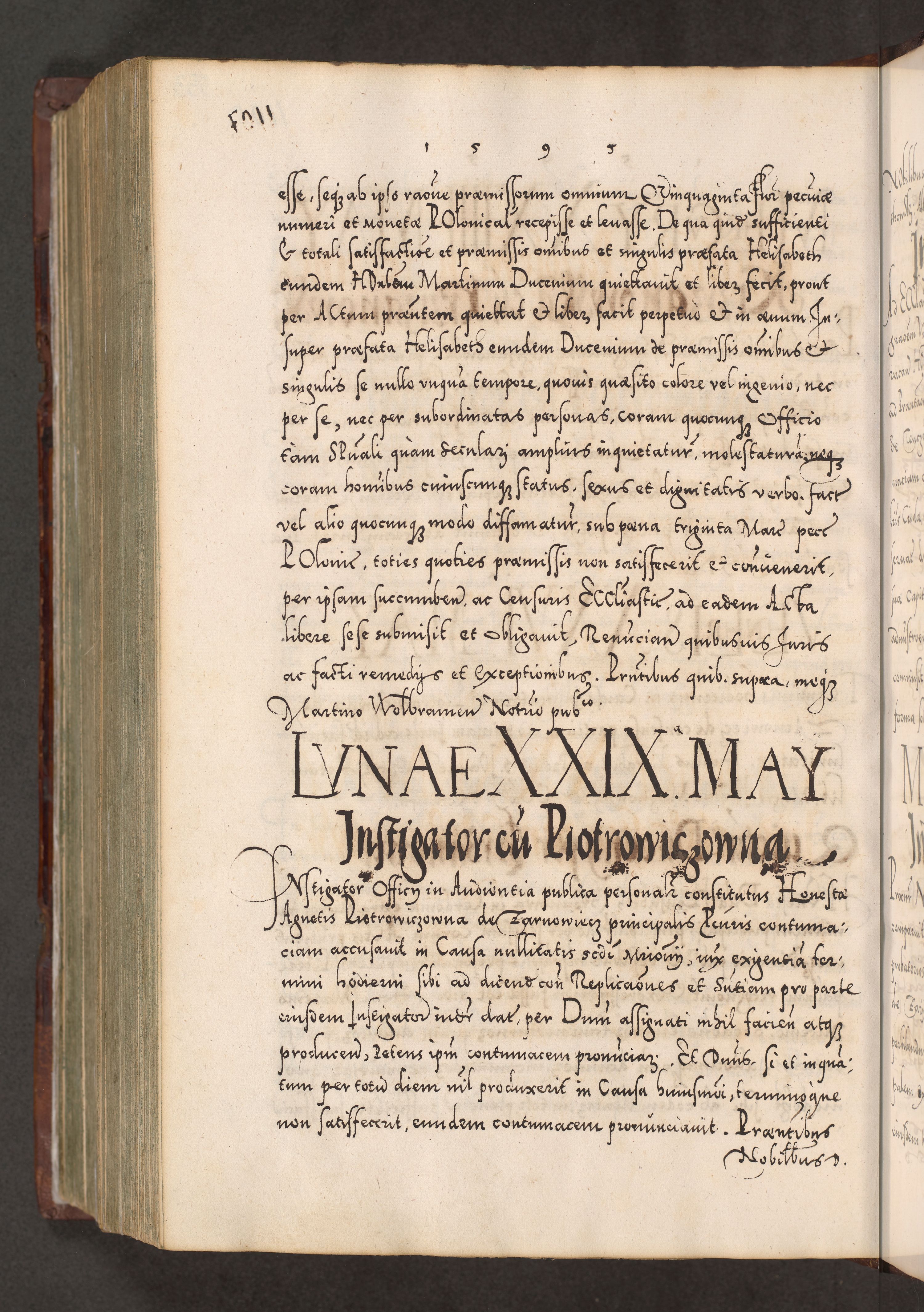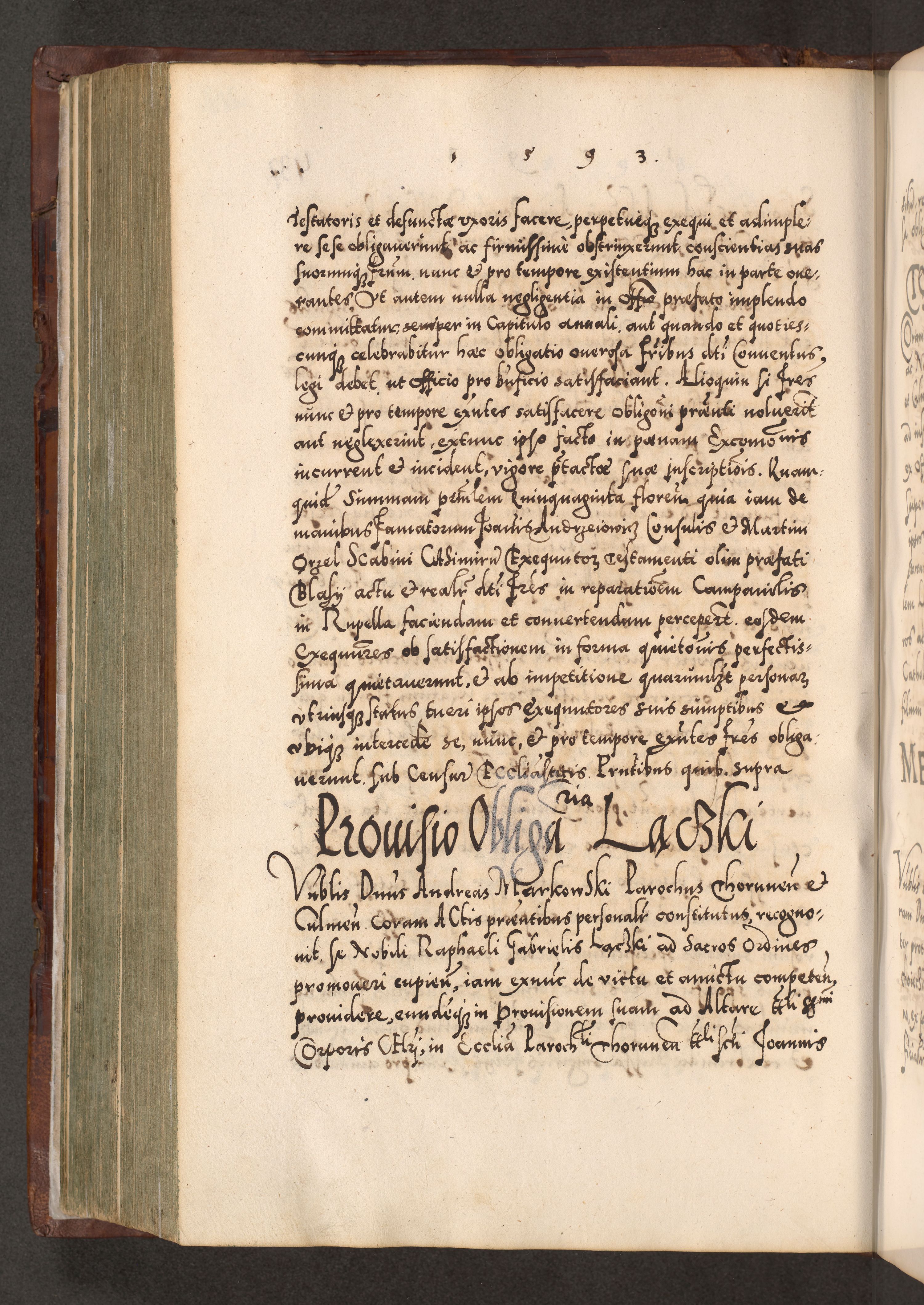 Illistrissimo et revedissimo in Christo Patre Domino Domino Georgio Rzadziwił Miserone Divina Sacrostae R. E. Tituli S. Sixti Presbitero Cardinali Duce in Olyka et Niesswiesz ad Gubernacula Ecclessiae Cracoviensis cuius administratorialem a Sancta Sede Apostolica obtinverat feliciter sedente. Acta actorum, causarum, sententiarum tam deffinitivarum quam interloquutoriarum decretorum, obligationum, quietationum, recognitionum, constitutionum procuratorum etc. coram Reverendo Domino Stanislao Crassinskz de Crasne Archidiacono Cracoviensis, Scholastico Gnesnesis, Custode Plocensis etc. Vicario et Officiali Generali Cracoviensi in Ano Domini Millesimo Quingentesimo Nonagesimo Primo cuius indictio quarta pontificatus SS. Domini Nostri Gregorii XIIII Anno I psius prio feliciter incipiut