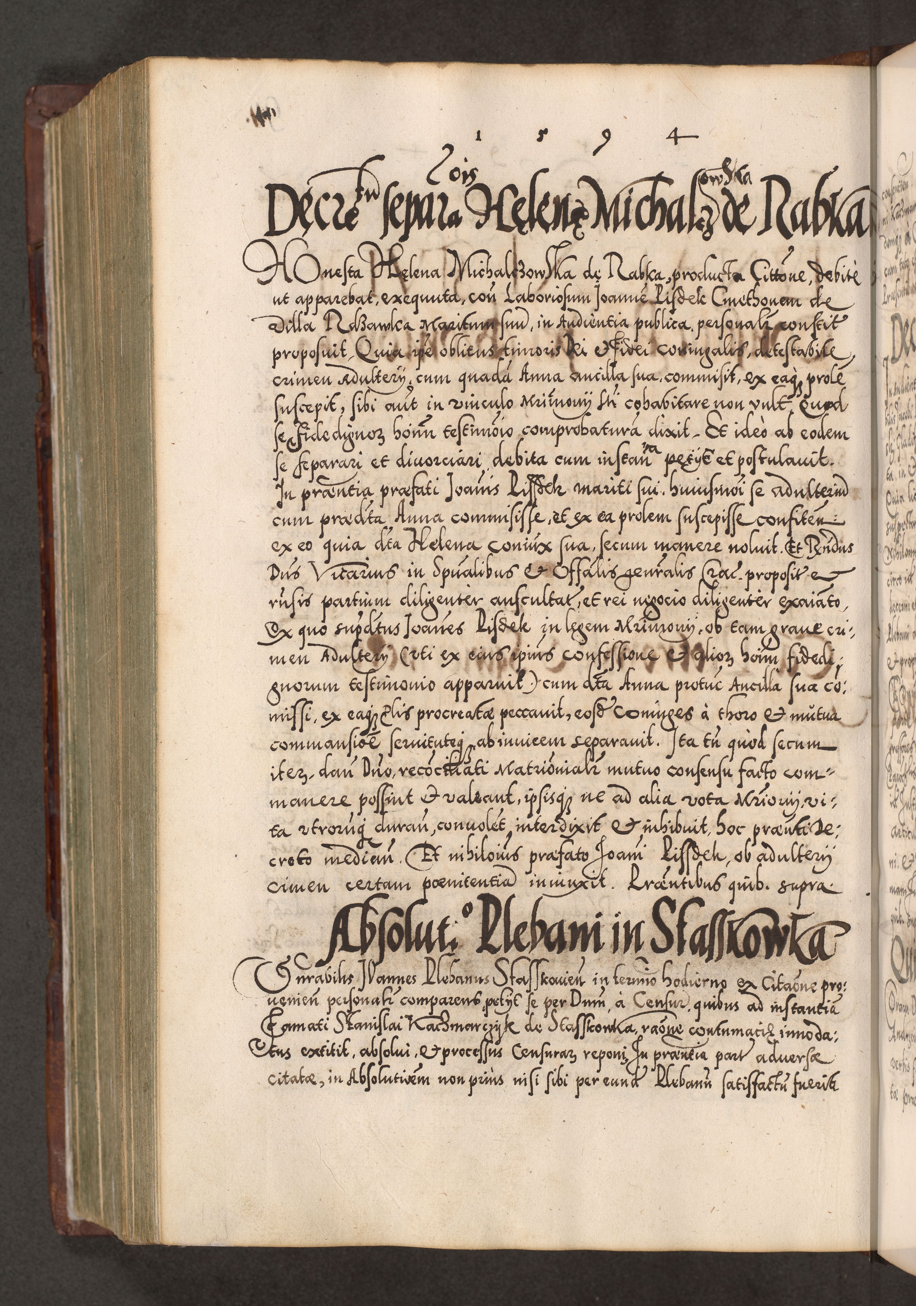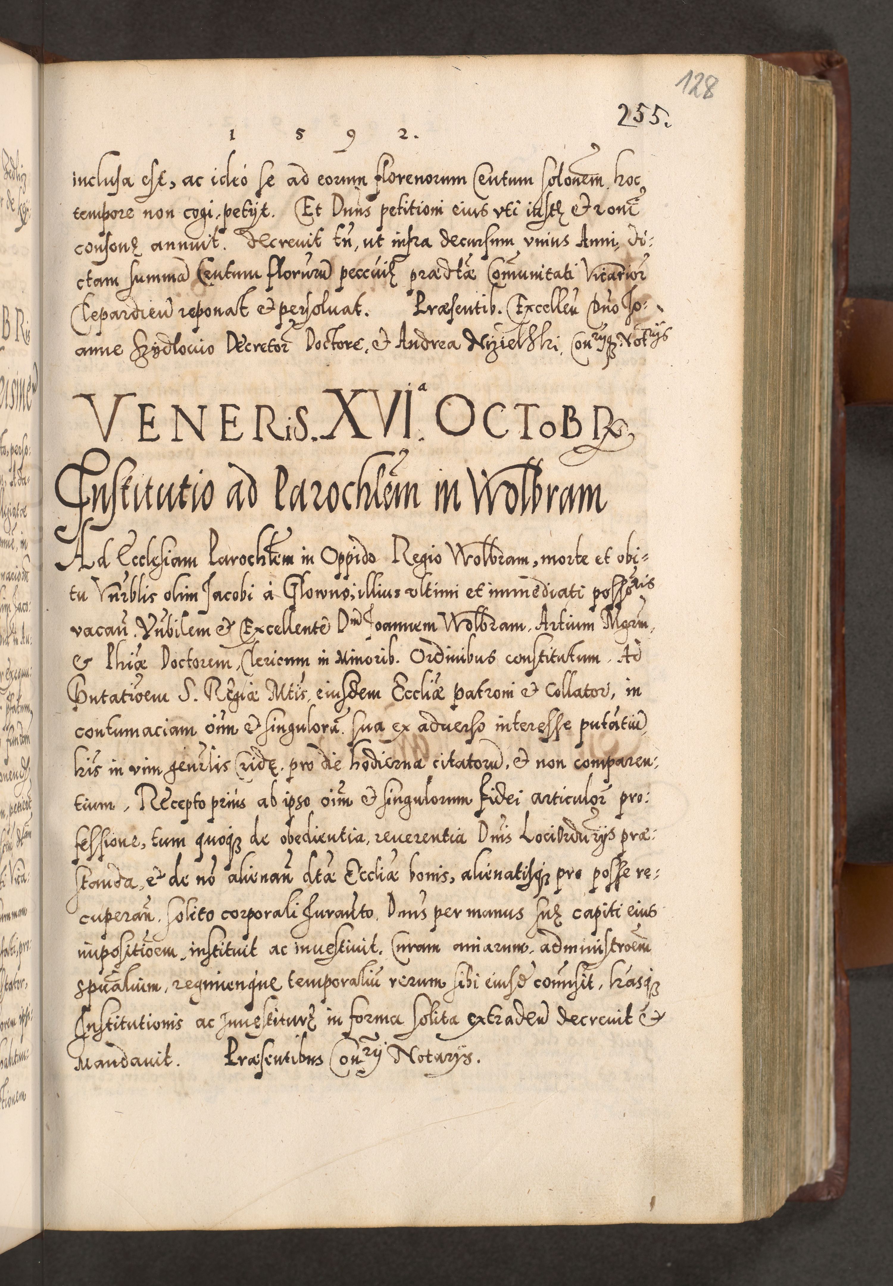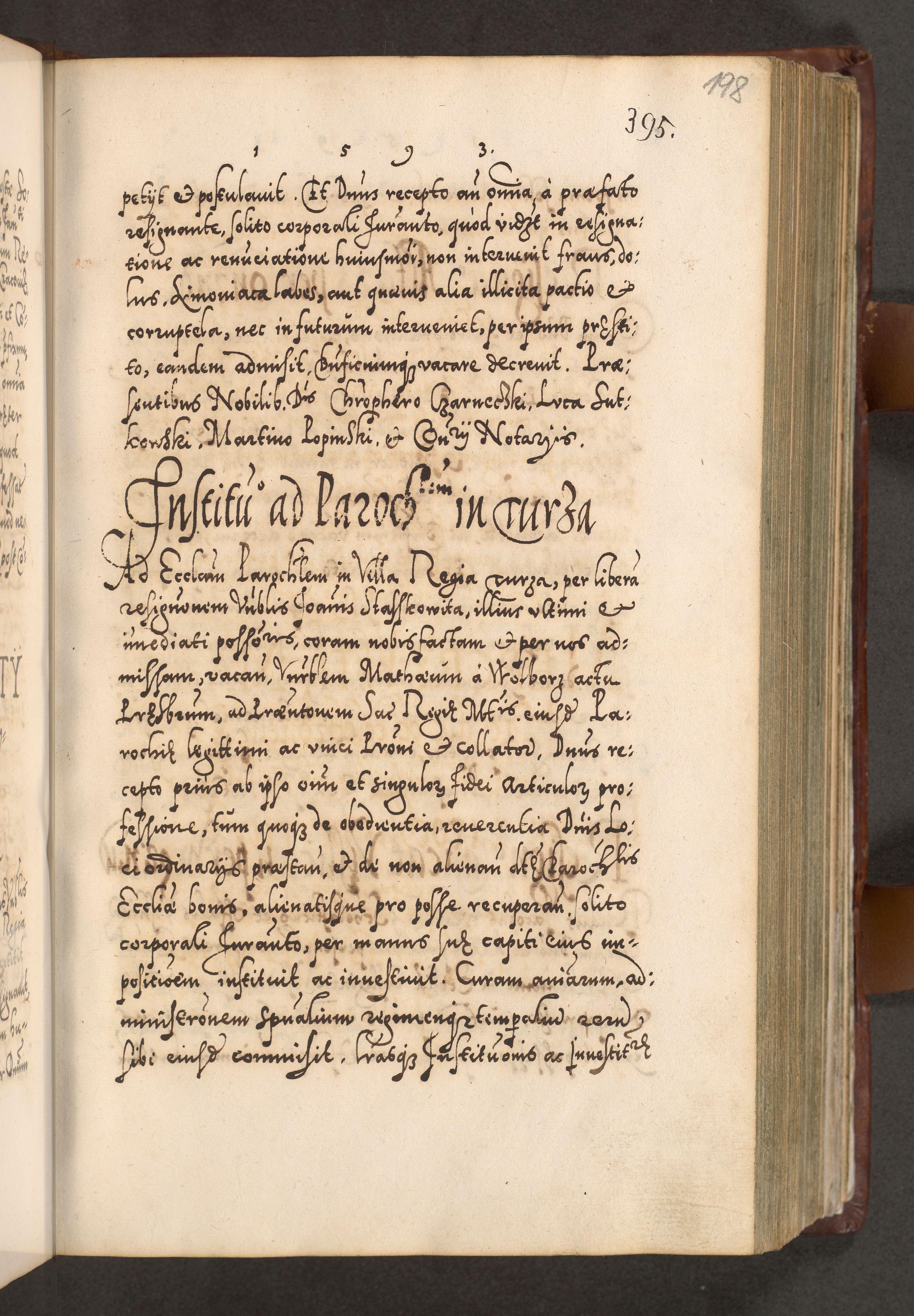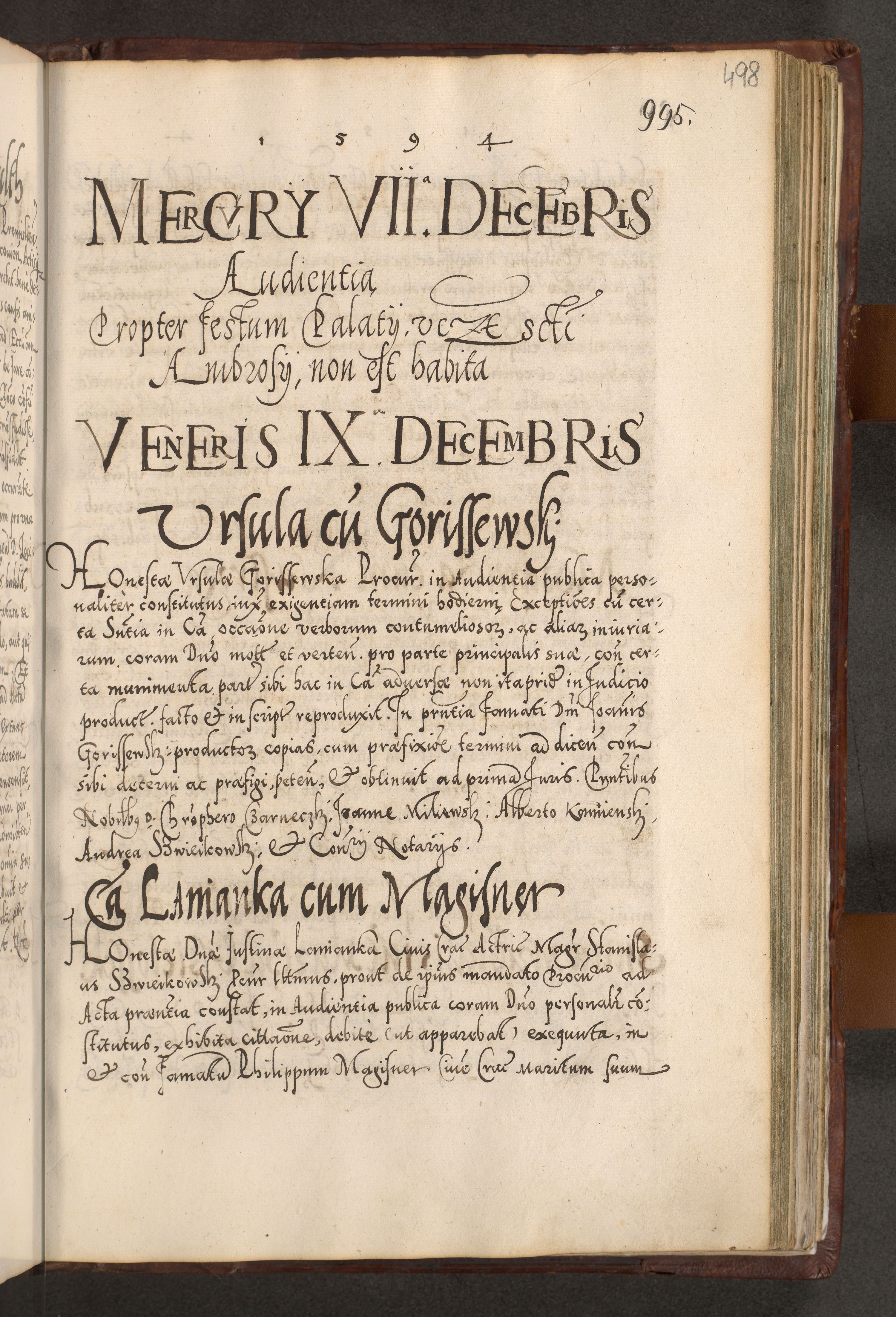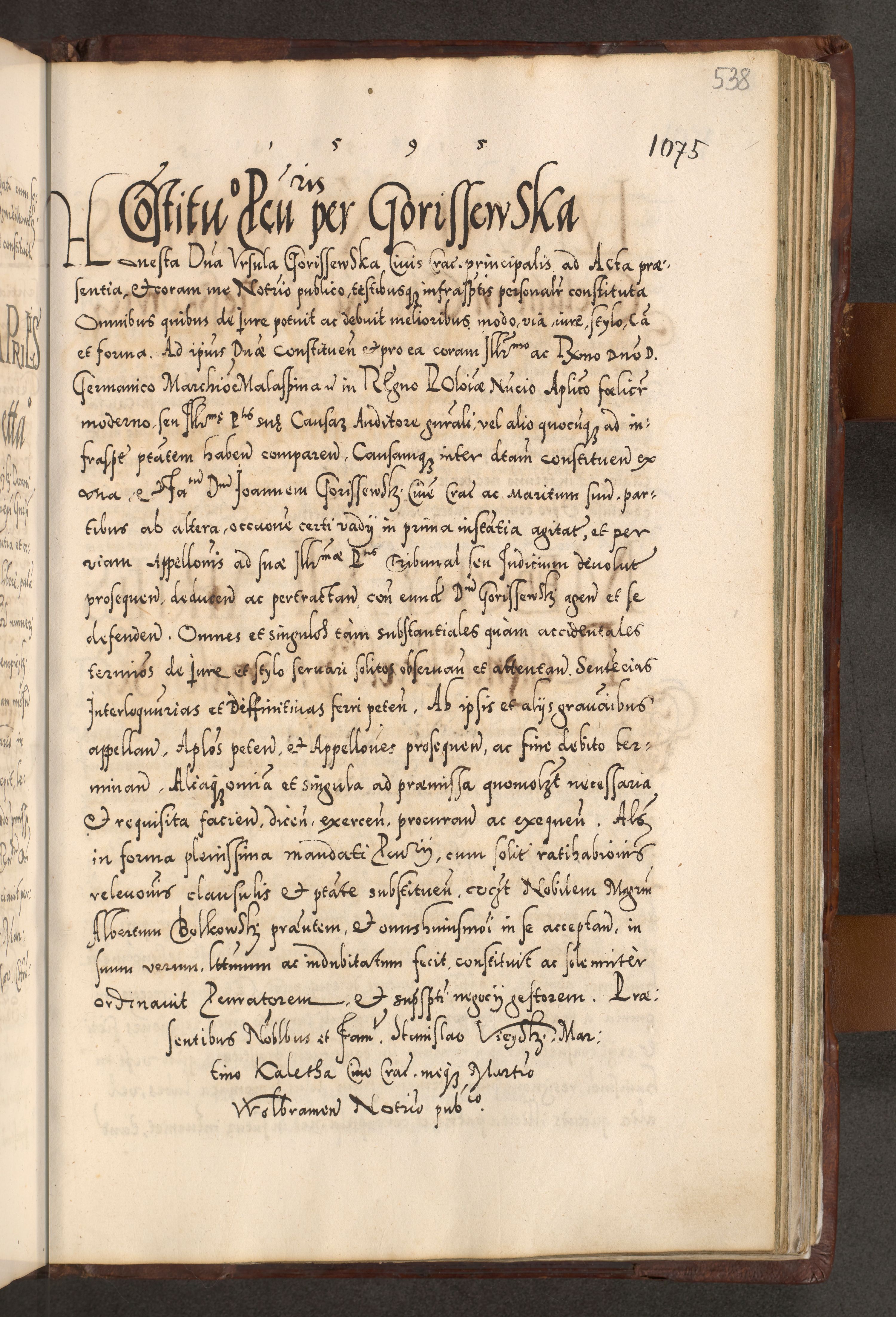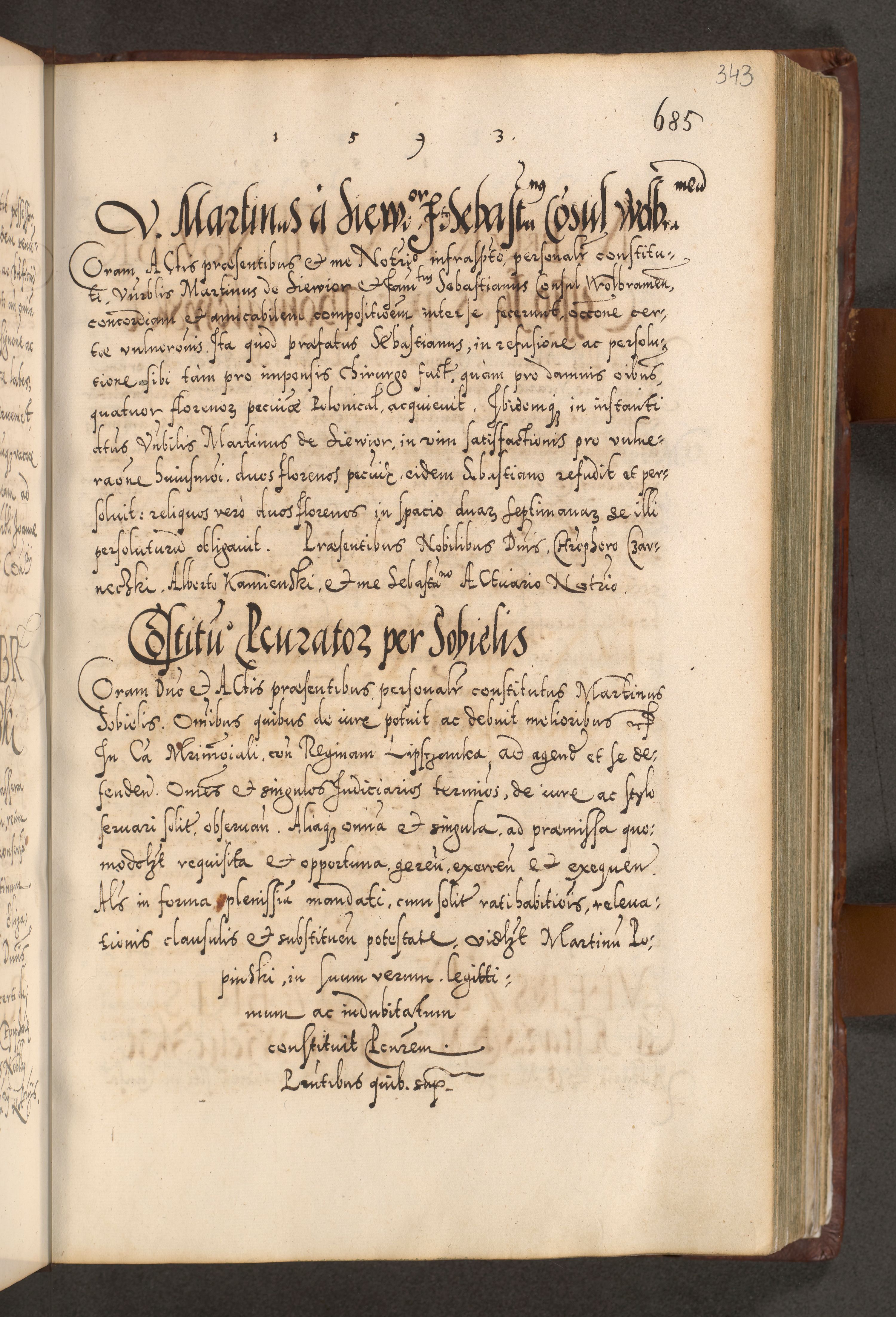 Illistrissimo et revedissimo in Christo Patre Domino Domino Georgio Rzadziwił Miserone Divina Sacrostae R. E. Tituli S. Sixti Presbitero Cardinali Duce in Olyka et Niesswiesz ad Gubernacula Ecclessiae Cracoviensis cuius administratorialem a Sancta Sede Apostolica obtinverat feliciter sedente. Acta actorum, causarum, sententiarum tam deffinitivarum quam interloquutoriarum decretorum, obligationum, quietationum, recognitionum, constitutionum procuratorum etc. coram Reverendo Domino Stanislao Crassinskz de Crasne Archidiacono Cracoviensis, Scholastico Gnesnesis, Custode Plocensis etc. Vicario et Officiali Generali Cracoviensi in Ano Domini Millesimo Quingentesimo Nonagesimo Primo cuius indictio quarta pontificatus SS. Domini Nostri Gregorii XIIII Anno I psius prio feliciter incipiut
