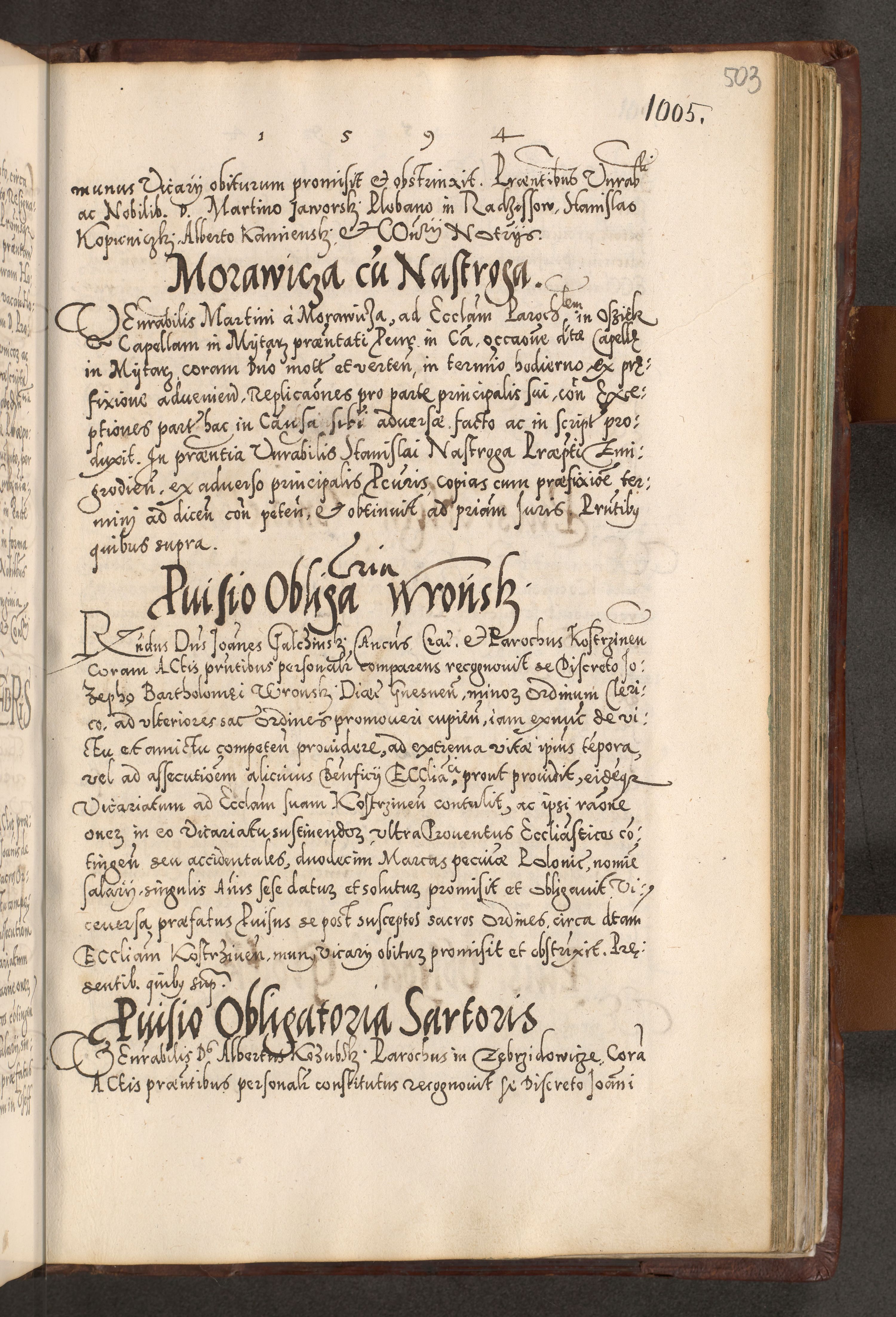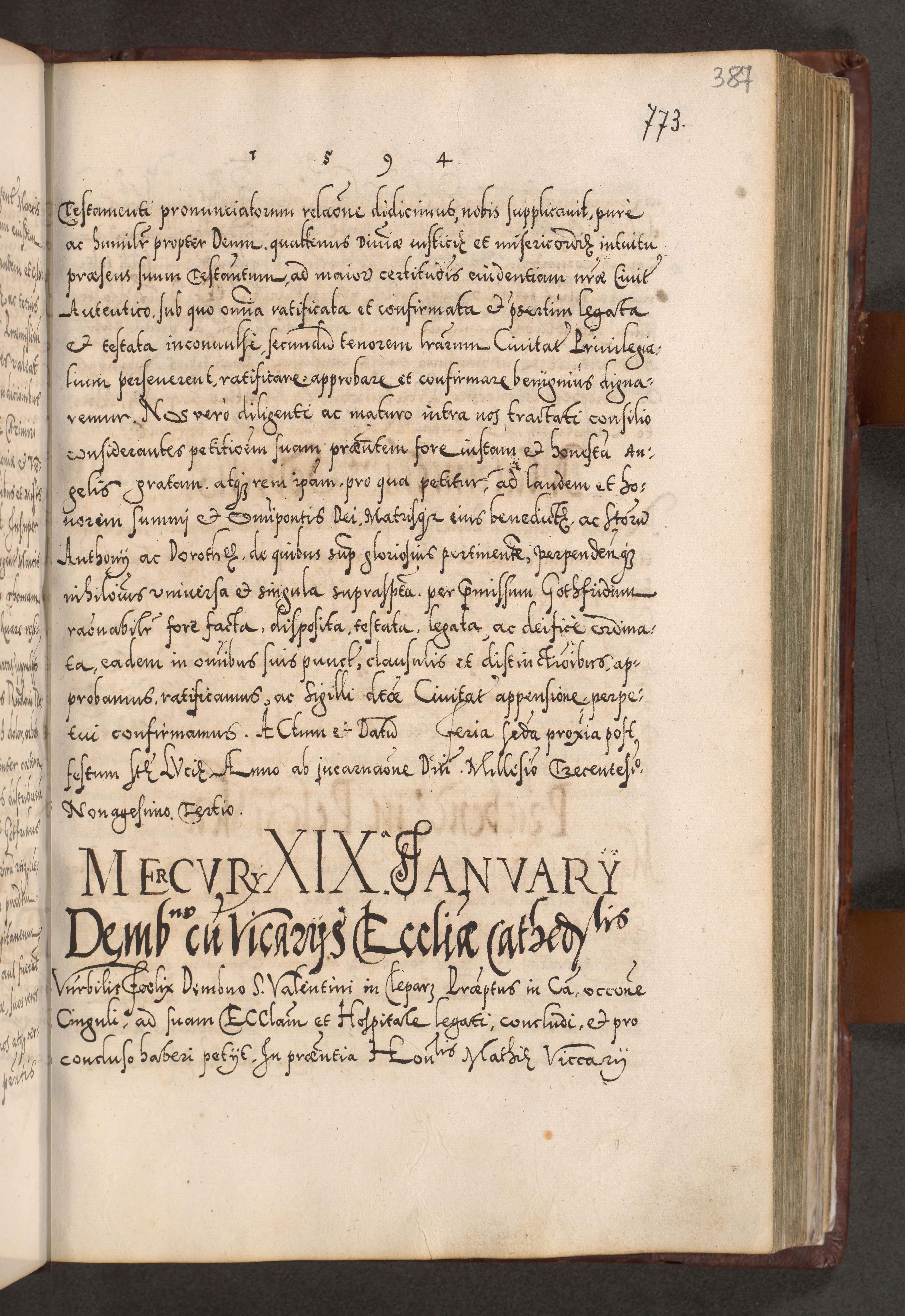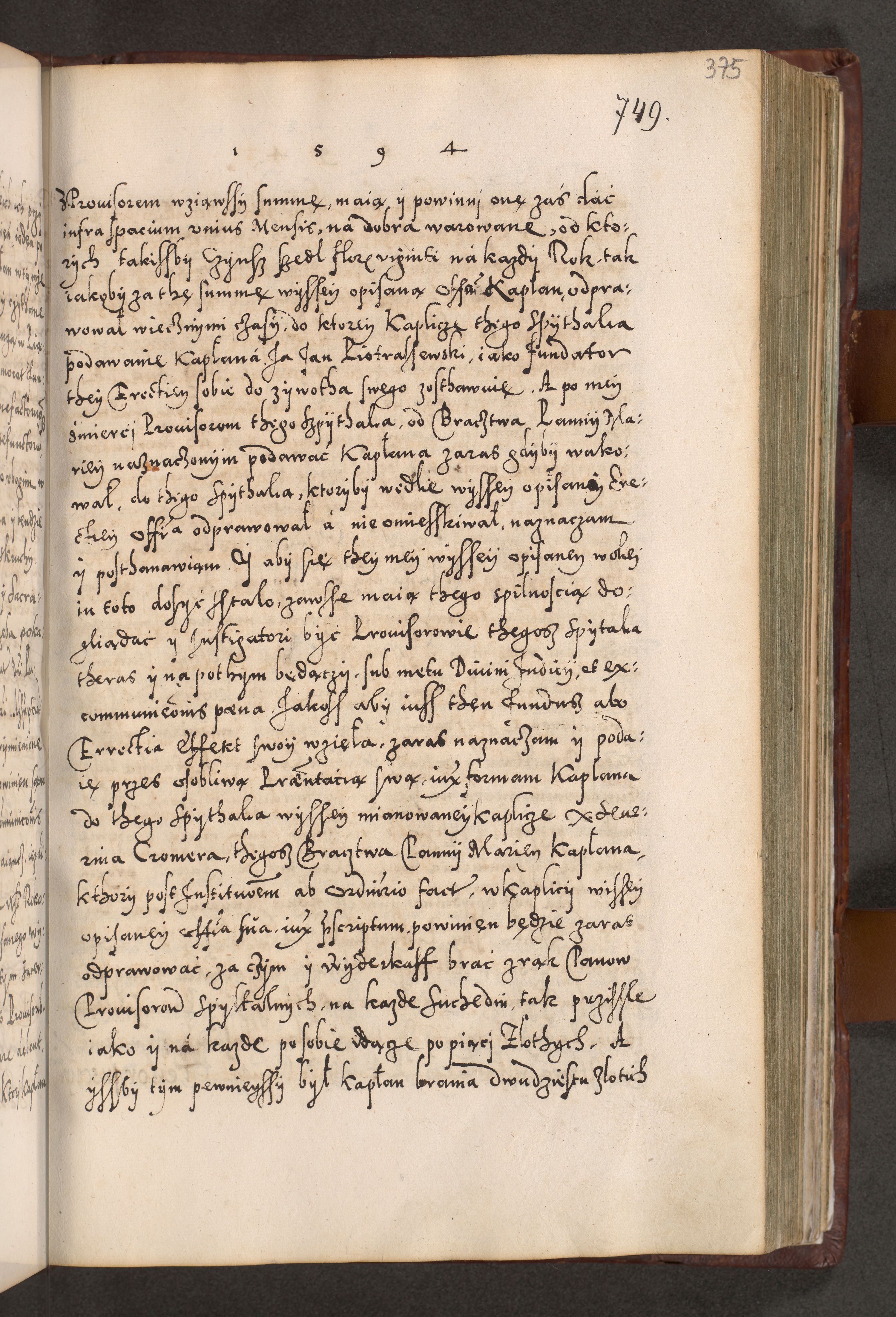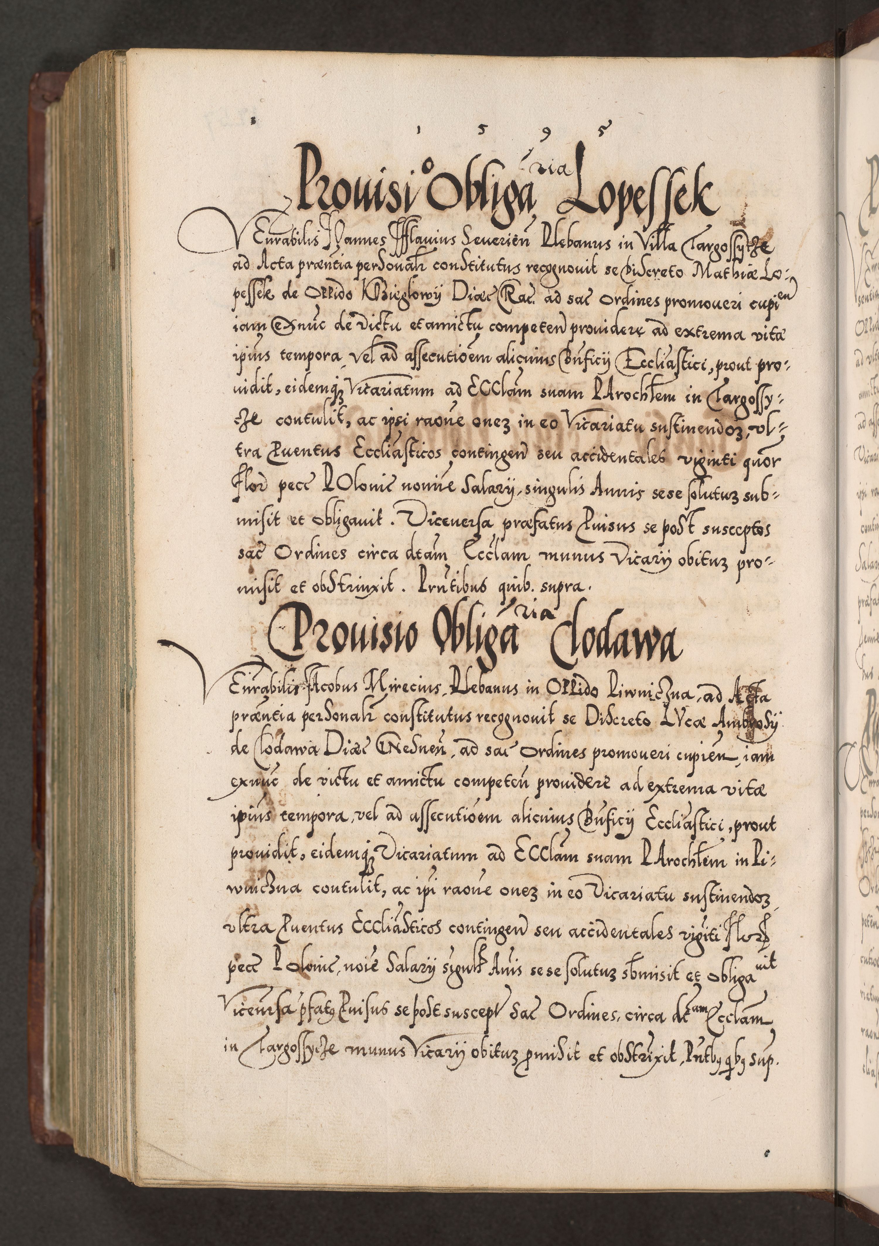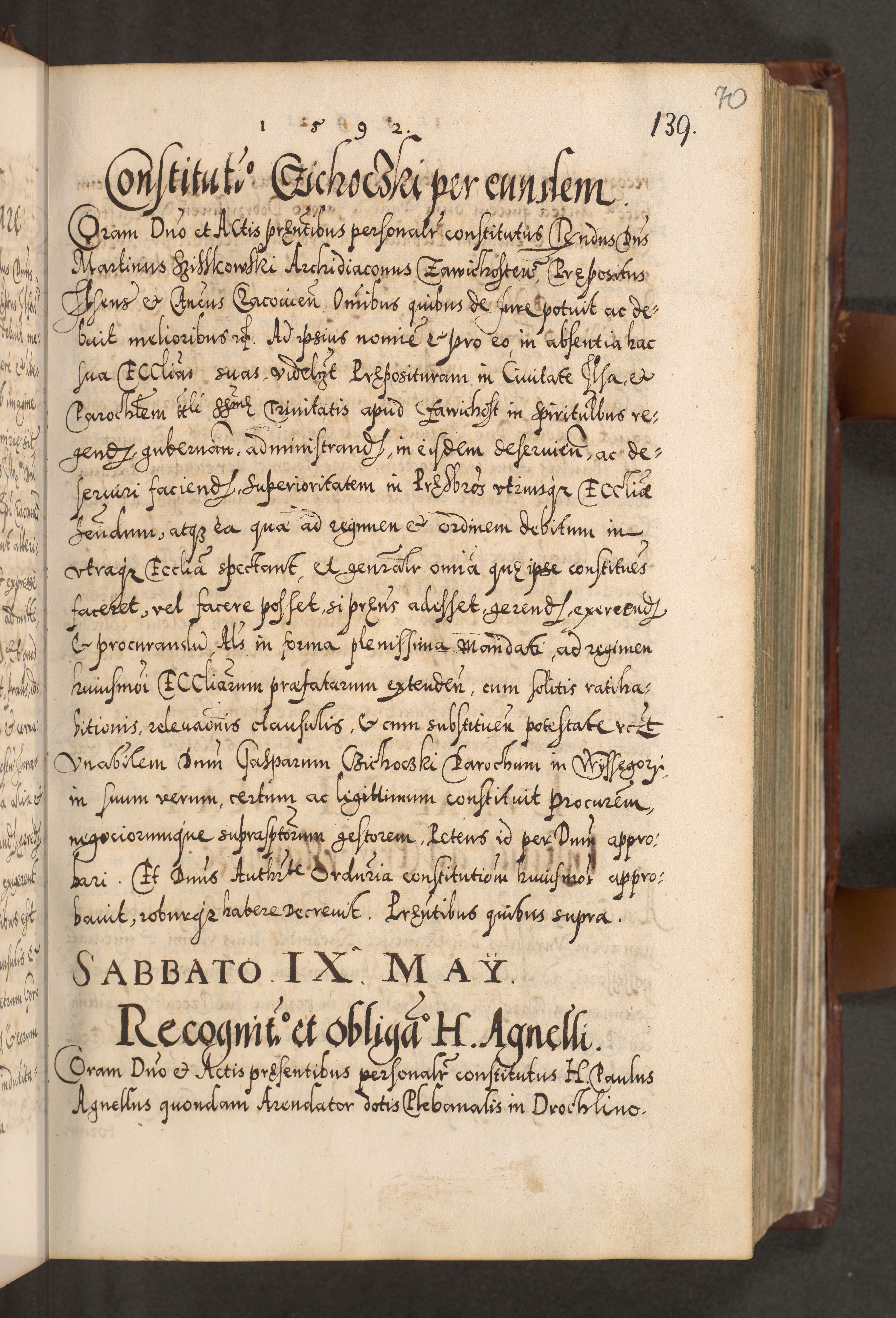 Illistrissimo et revedissimo in Christo Patre Domino Domino Georgio Rzadziwił Miserone Divina Sacrostae R. E. Tituli S. Sixti Presbitero Cardinali Duce in Olyka et Niesswiesz ad Gubernacula Ecclessiae Cracoviensis cuius administratorialem a Sancta Sede Apostolica obtinverat feliciter sedente. Acta actorum, causarum, sententiarum tam deffinitivarum quam interloquutoriarum decretorum, obligationum, quietationum, recognitionum, constitutionum procuratorum etc. coram Reverendo Domino Stanislao Crassinskz de Crasne Archidiacono Cracoviensis, Scholastico Gnesnesis, Custode Plocensis etc. Vicario et Officiali Generali Cracoviensi in Ano Domini Millesimo Quingentesimo Nonagesimo Primo cuius indictio quarta pontificatus SS. Domini Nostri Gregorii XIIII Anno I psius prio feliciter incipiut