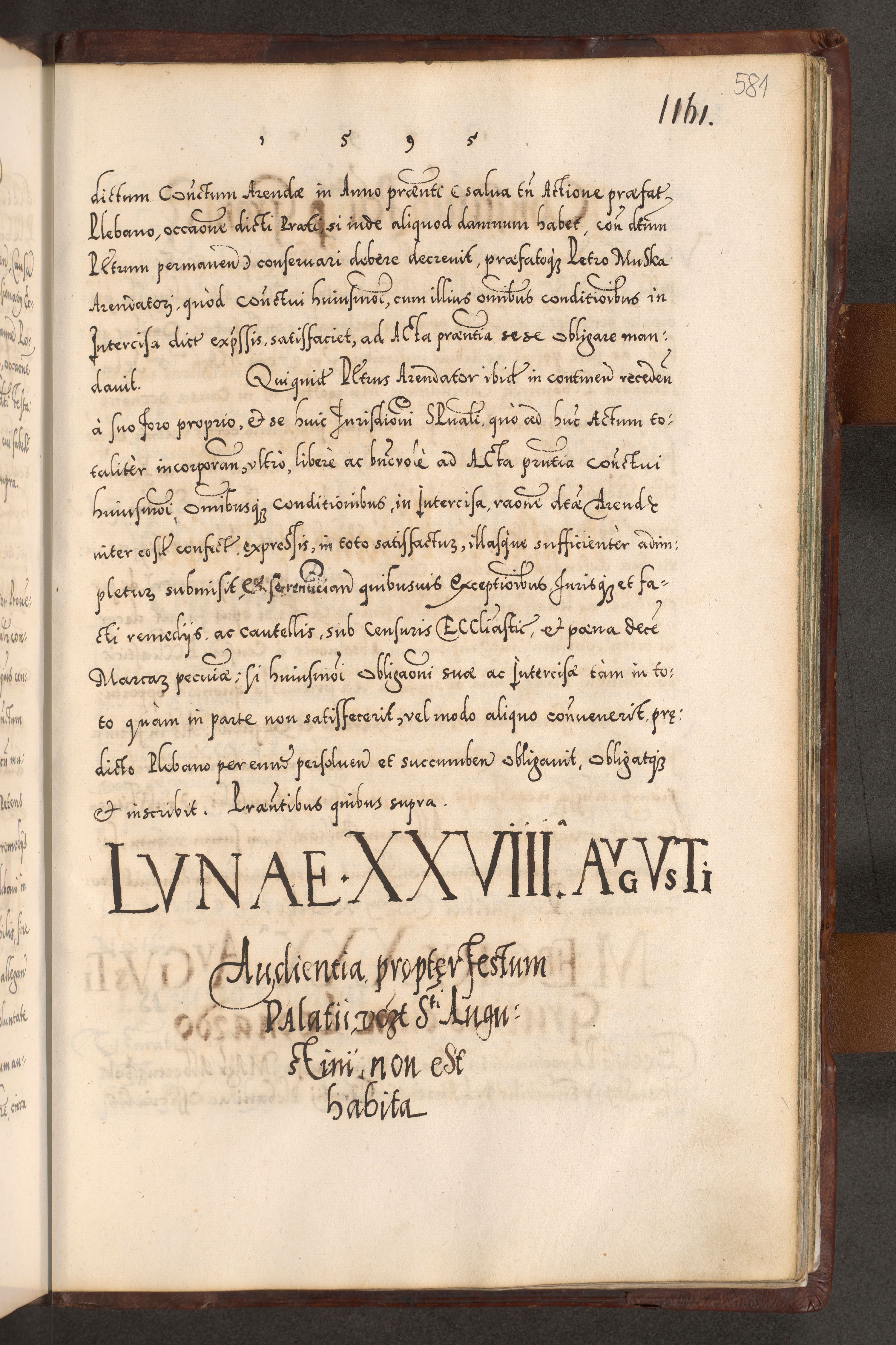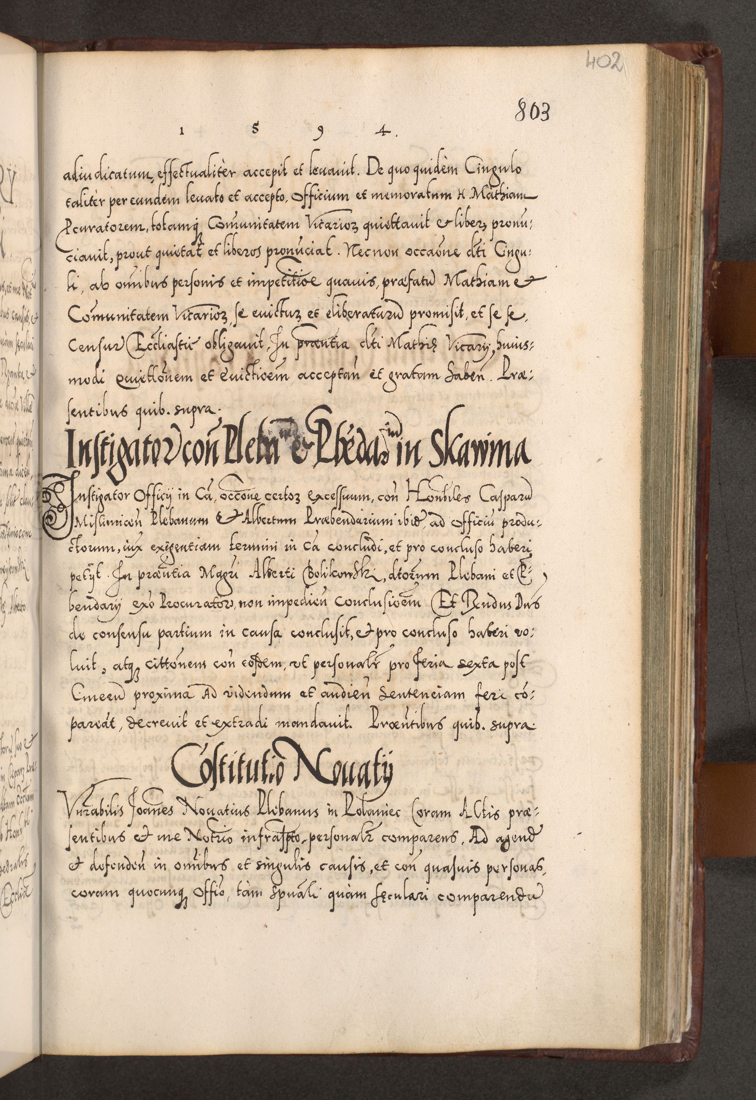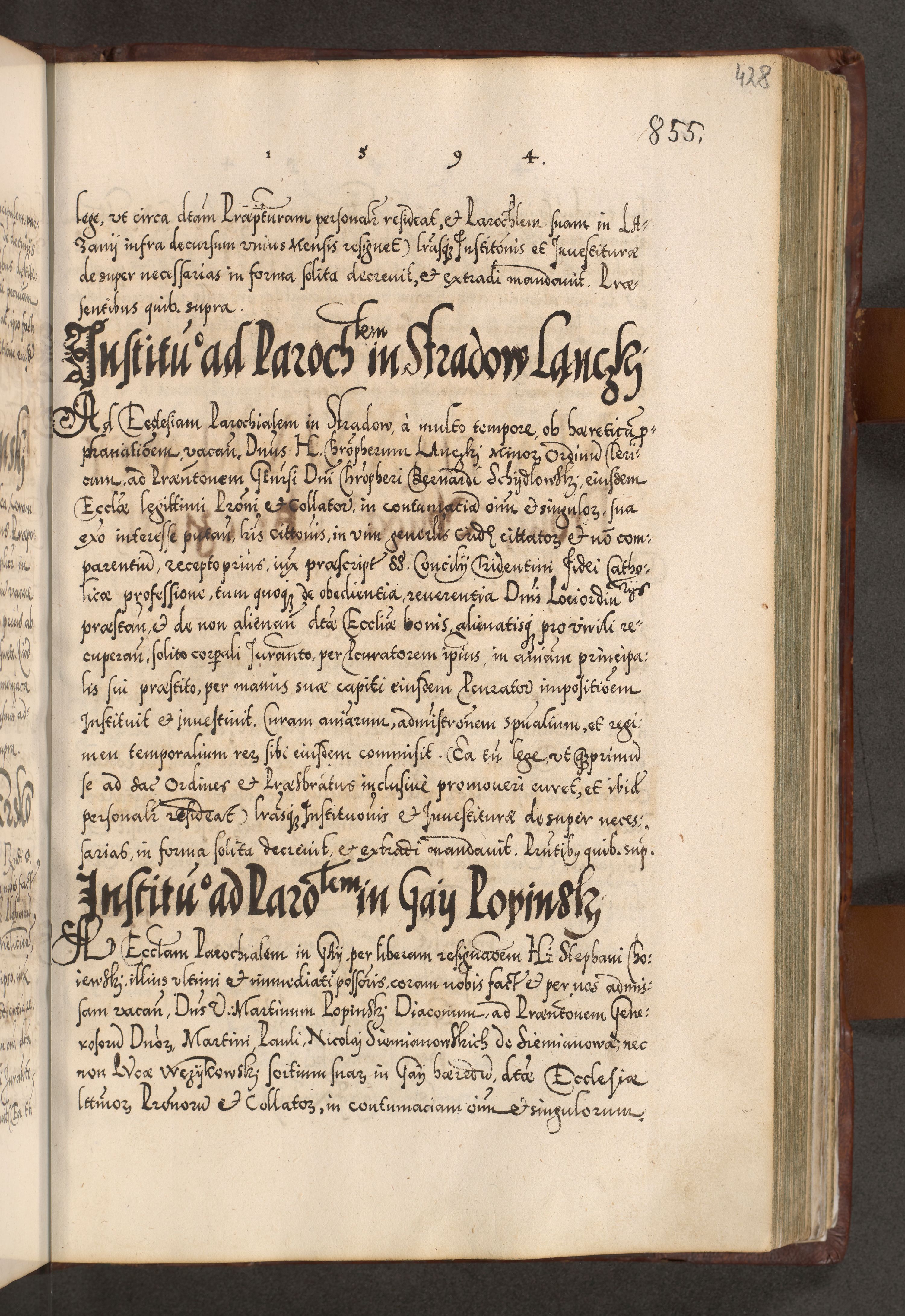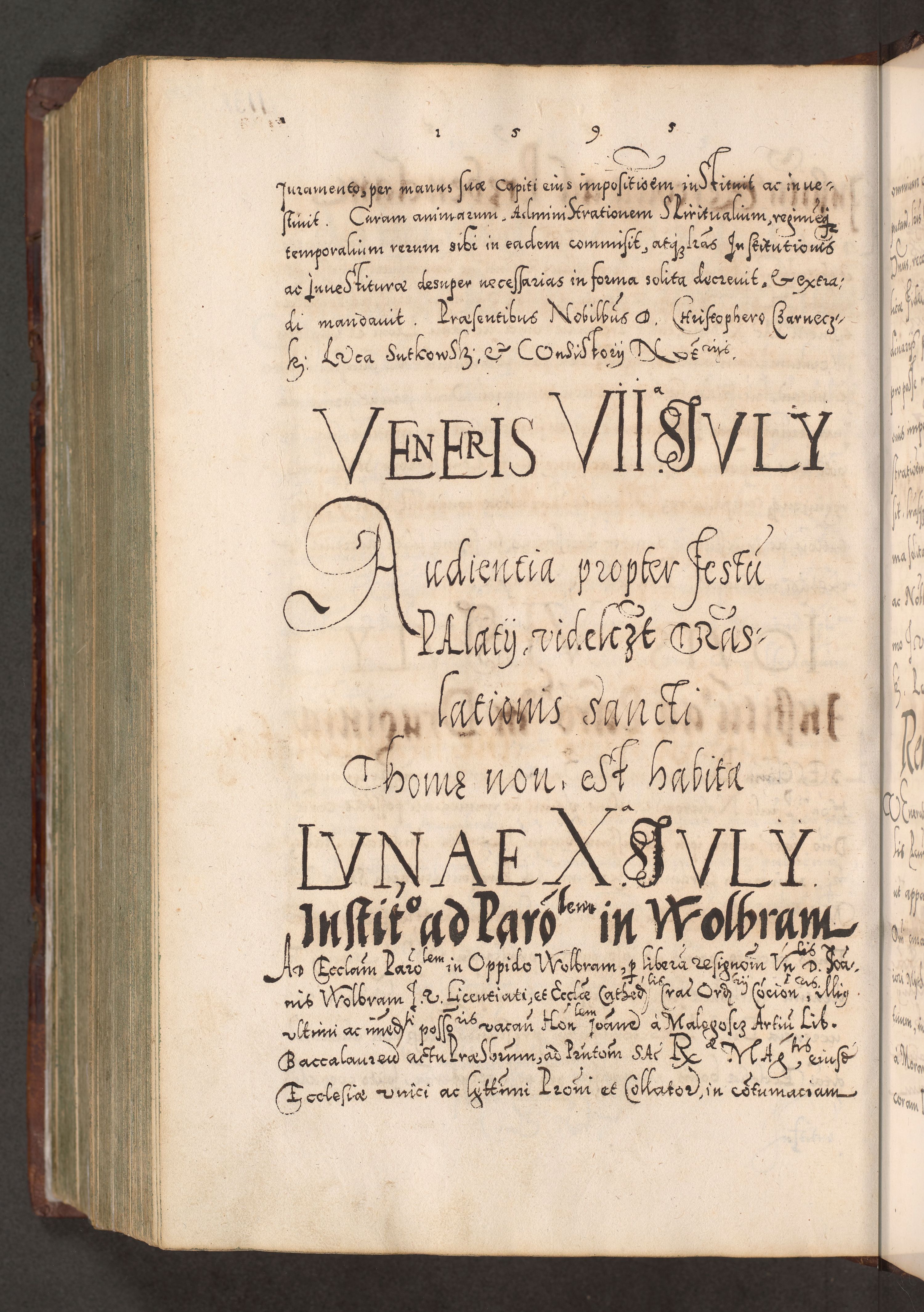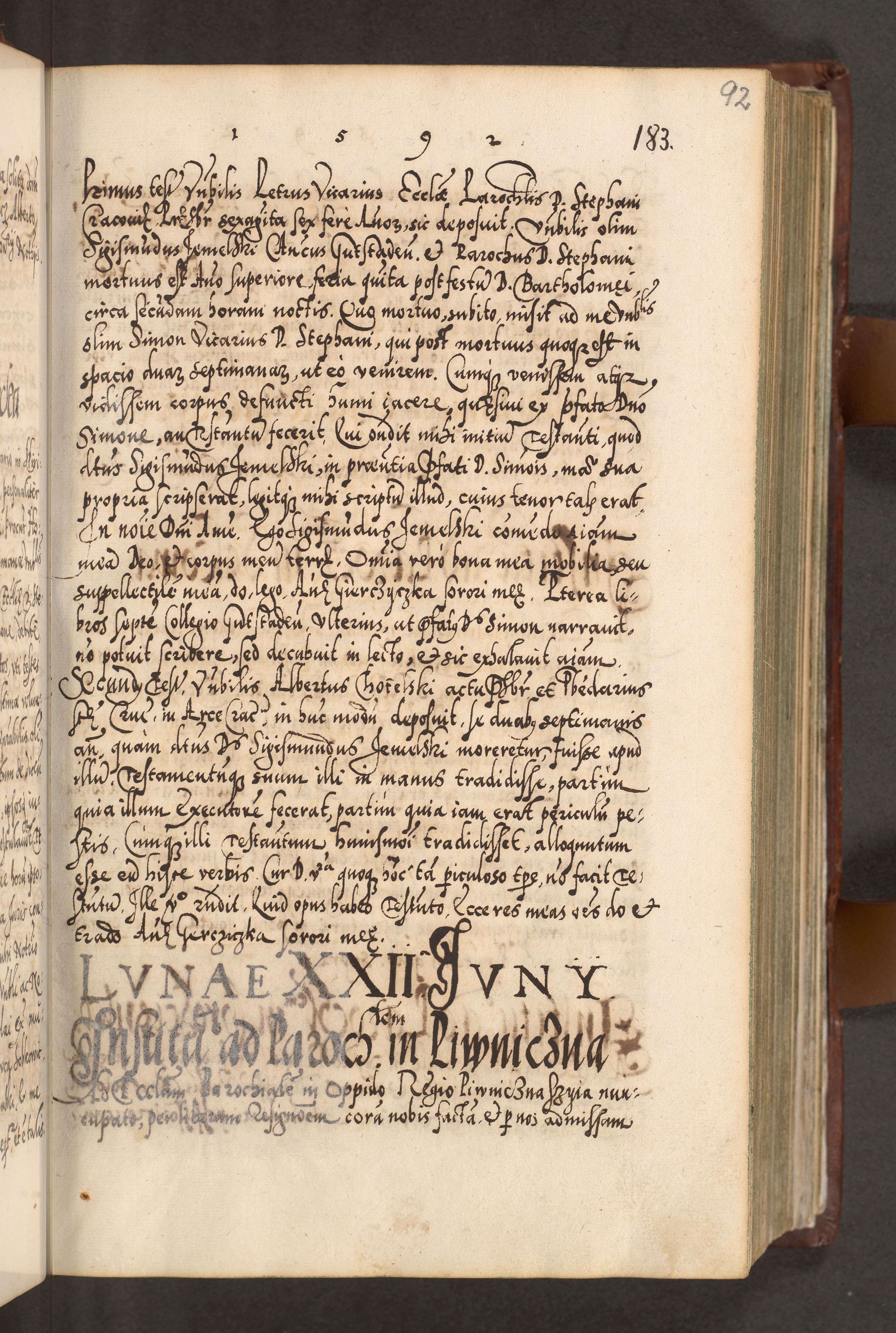 Illistrissimo et revedissimo in Christo Patre Domino Domino Georgio Rzadziwił Miserone Divina Sacrostae R. E. Tituli S. Sixti Presbitero Cardinali Duce in Olyka et Niesswiesz ad Gubernacula Ecclessiae Cracoviensis cuius administratorialem a Sancta Sede Apostolica obtinverat feliciter sedente. Acta actorum, causarum, sententiarum tam deffinitivarum quam interloquutoriarum decretorum, obligationum, quietationum, recognitionum, constitutionum procuratorum etc. coram Reverendo Domino Stanislao Crassinskz de Crasne Archidiacono Cracoviensis, Scholastico Gnesnesis, Custode Plocensis etc. Vicario et Officiali Generali Cracoviensi in Ano Domini Millesimo Quingentesimo Nonagesimo Primo cuius indictio quarta pontificatus SS. Domini Nostri Gregorii XIIII Anno I psius prio feliciter incipiut