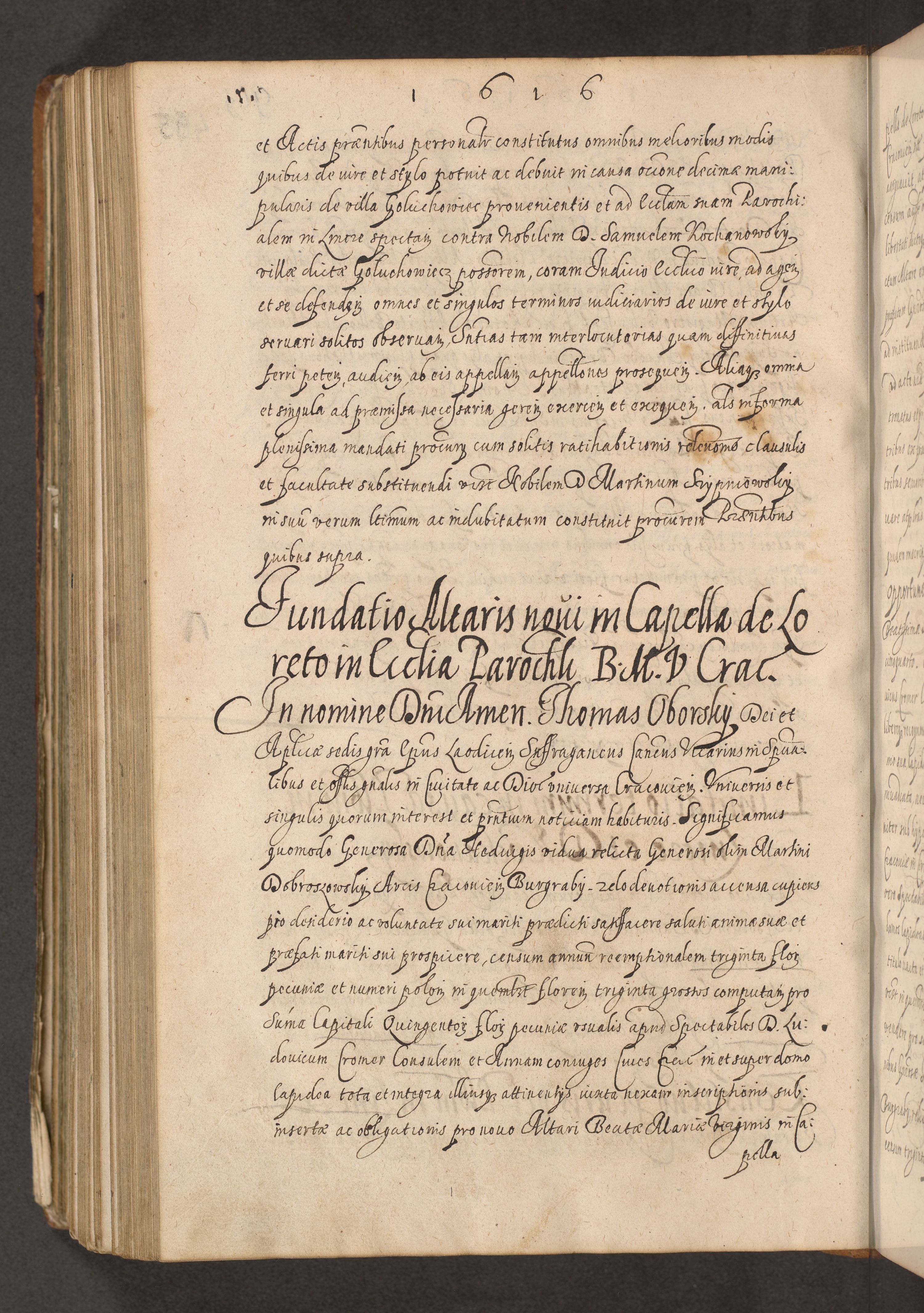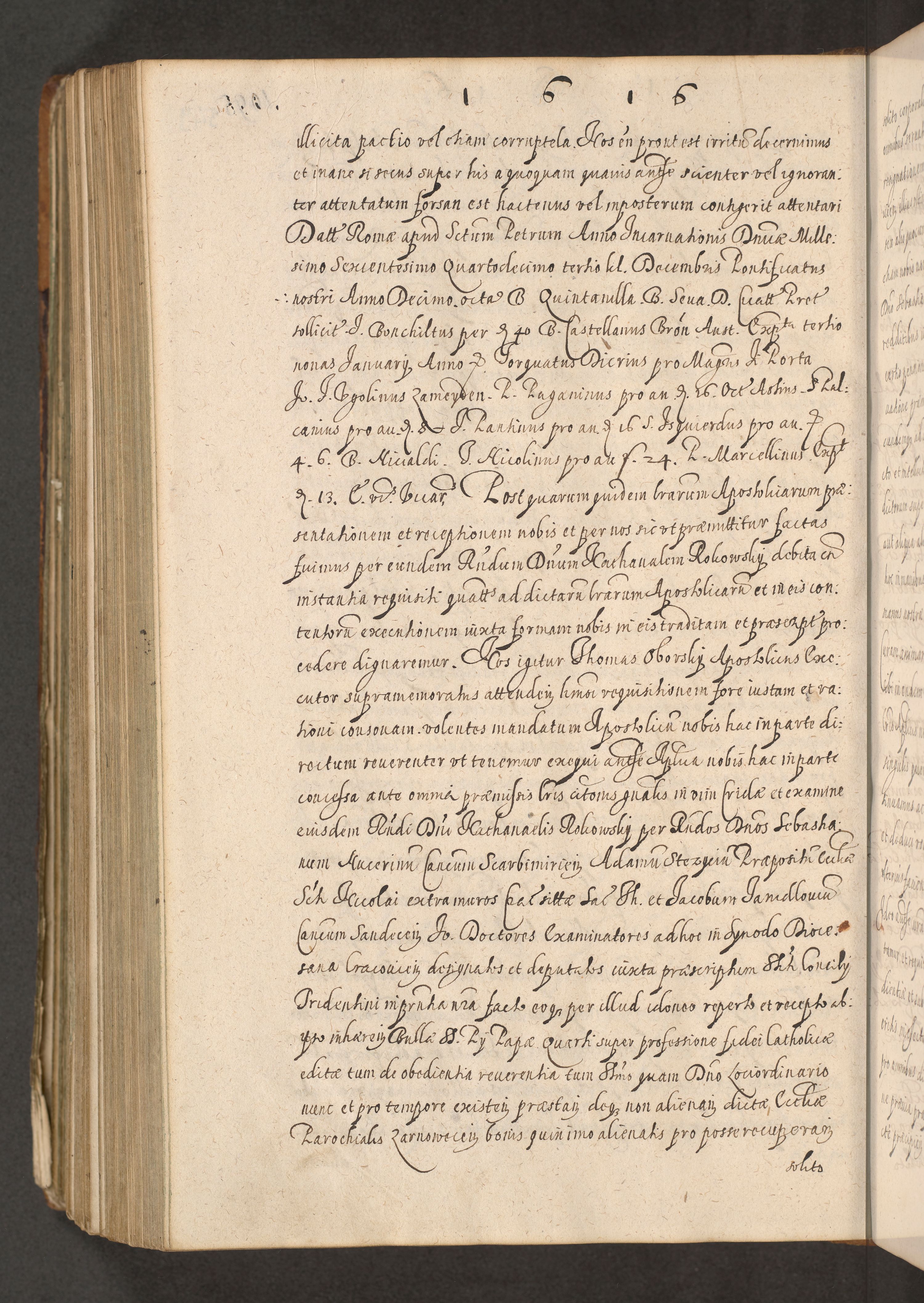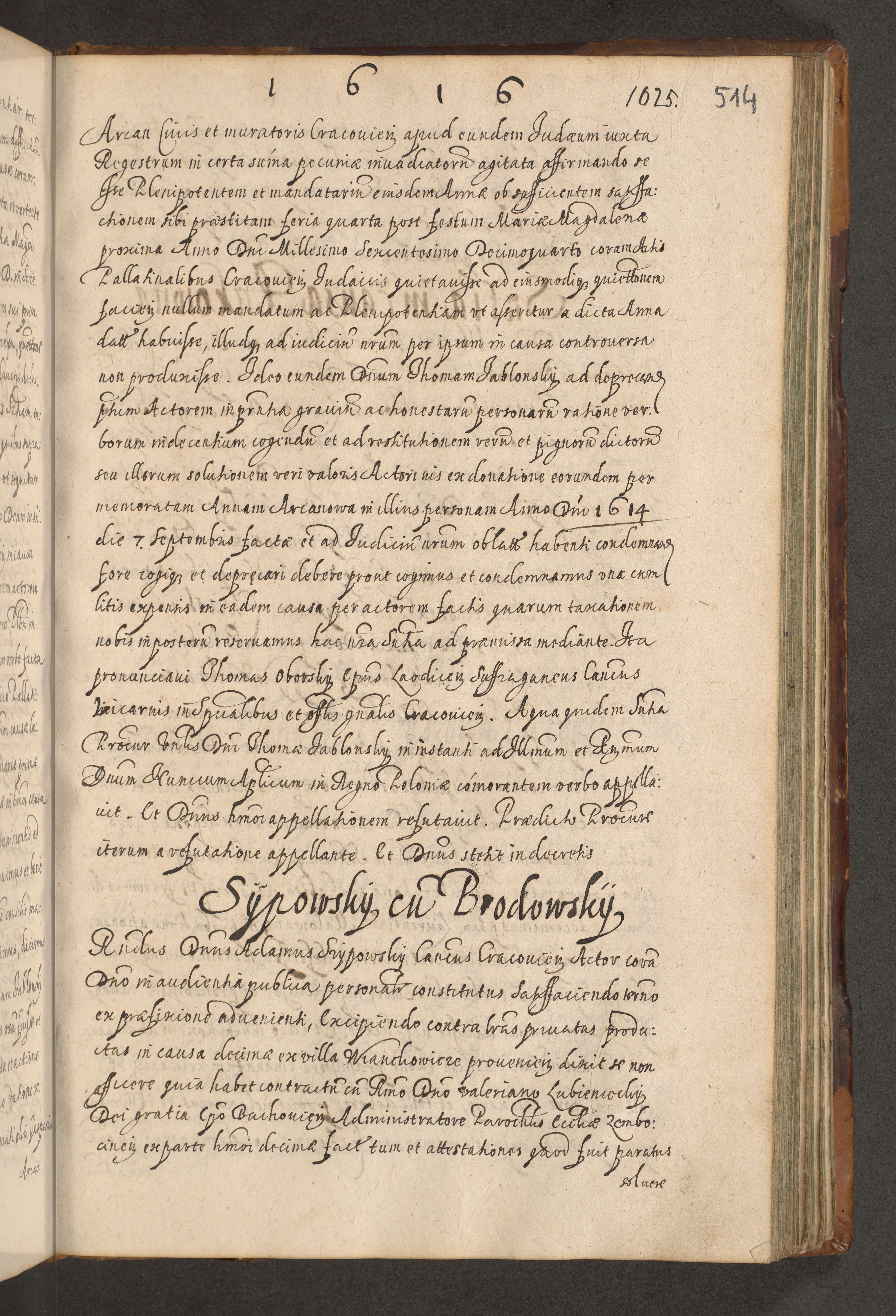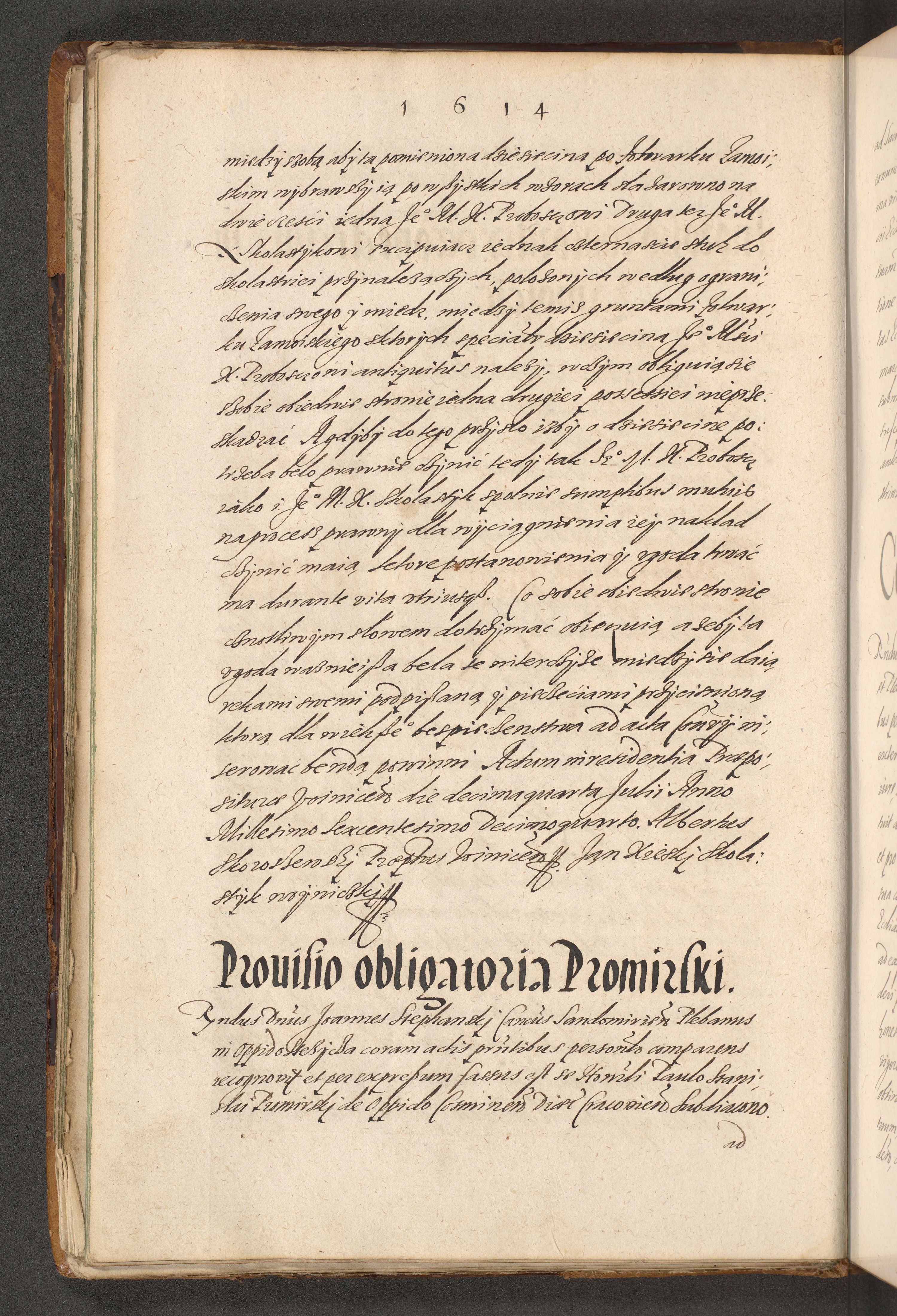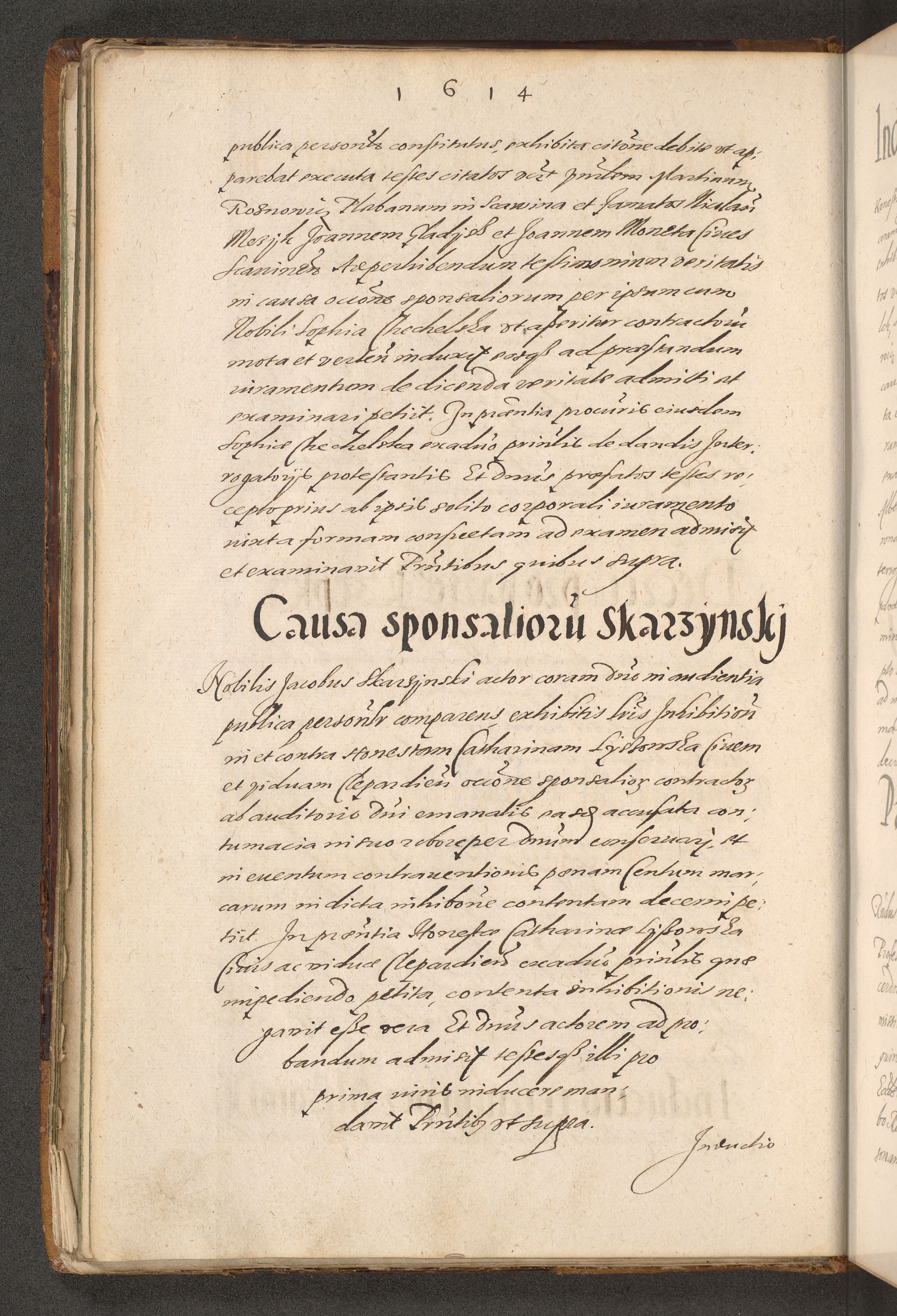 Illustrissimo et Reverendissimo in Christo Patre Domino Domino Petro Tylicki Dei et Apostolice Sedis Gratia Episcopo Cracoviensis Duce Severiensis Acta actorum causarum sententiarum tam interloquutoriarum quam definitivarum decretorum obligationum, quietationum, recognitionum, constitutionum procuratorum etc. etc. coram Admodum Reverendo Domino Thoma Oborski I. V. Doctore Canonico Vicario in Spiritualibus et Officiali generali Cracoviensis in anno Domini Millesimo Sexcentessimo Decimoquarto Cuius Indictio duodecima Pontificus SS. D. N. D. Pauli Divina providentia Papae quinti Anno decimo foeliciter incipiunt