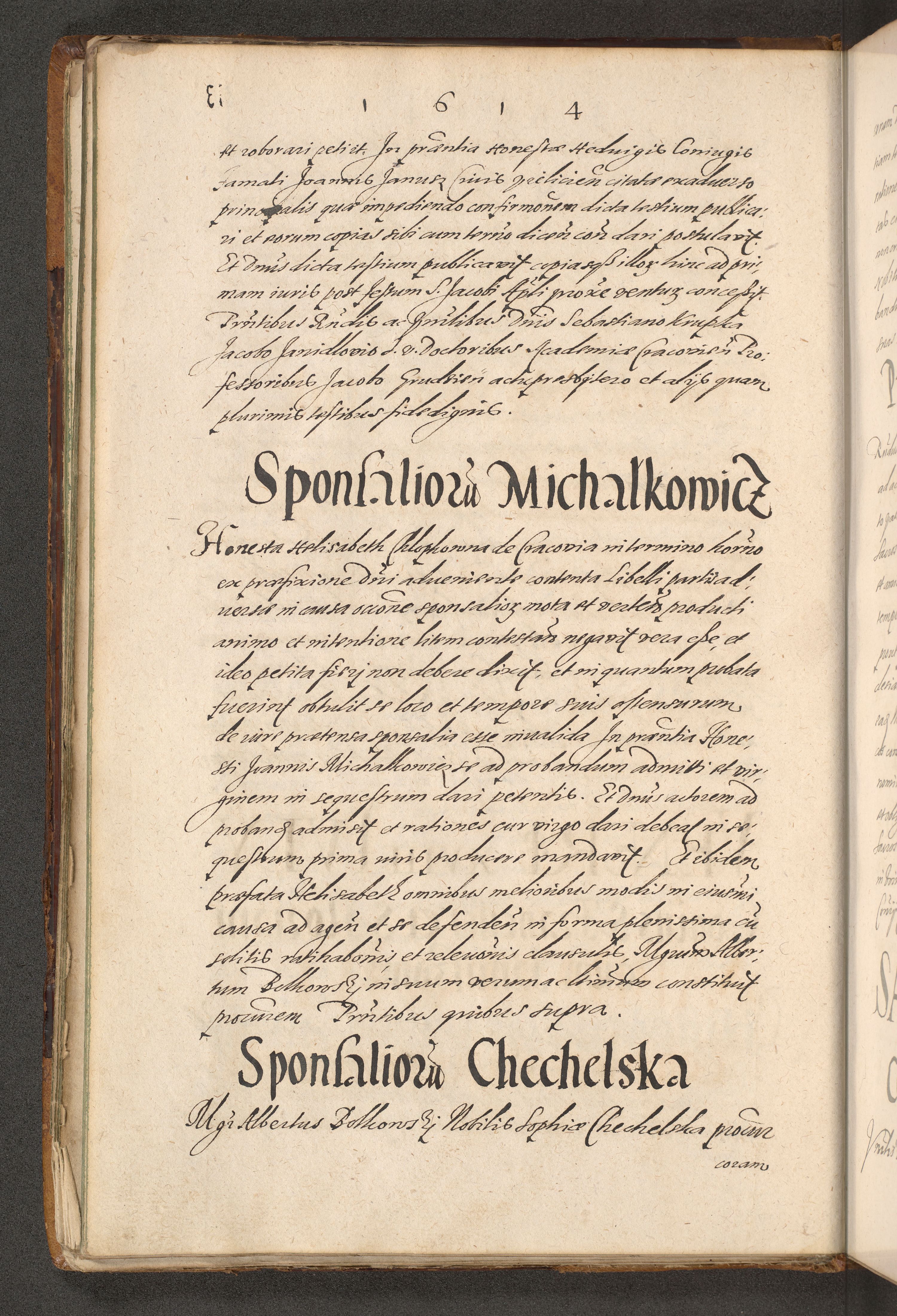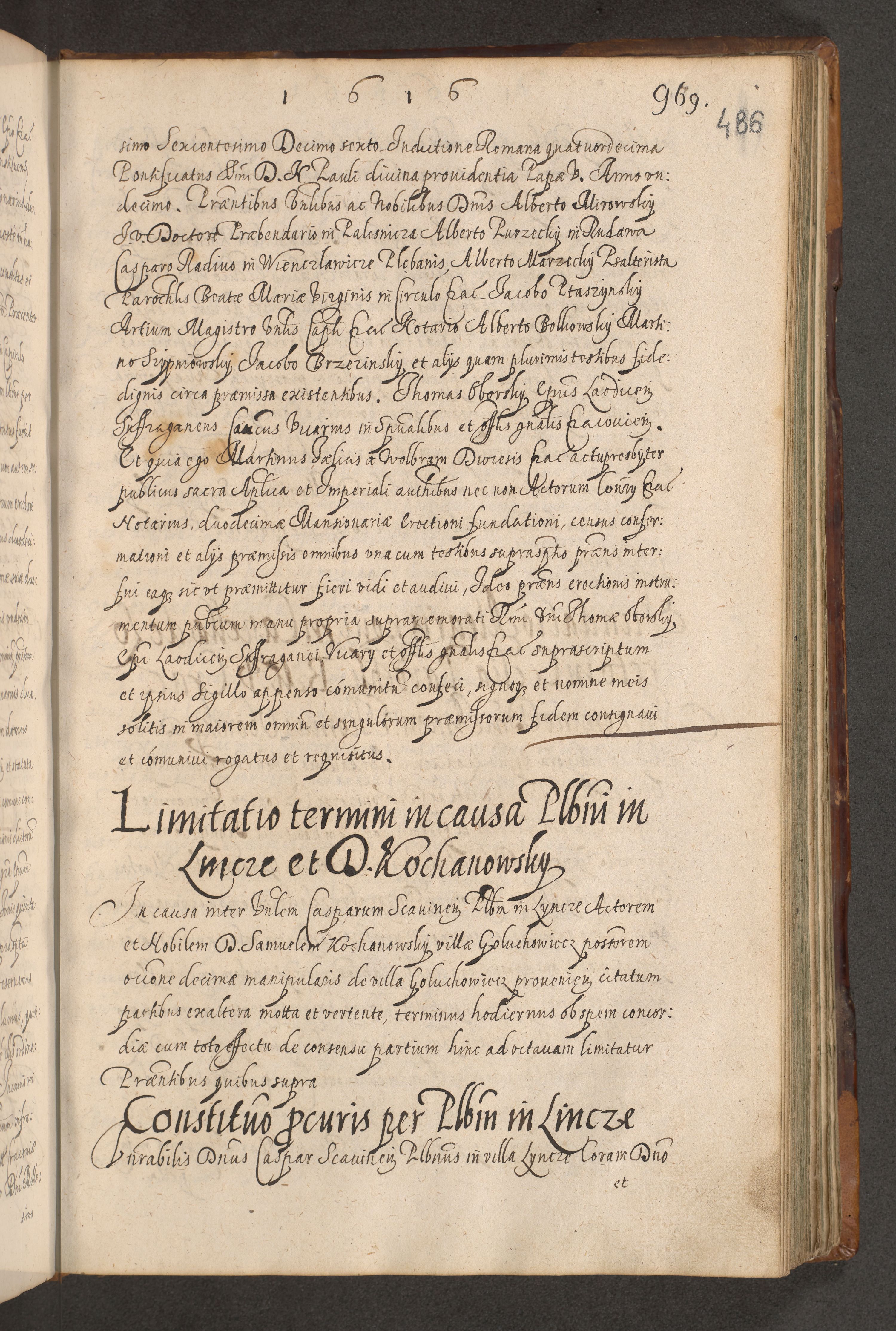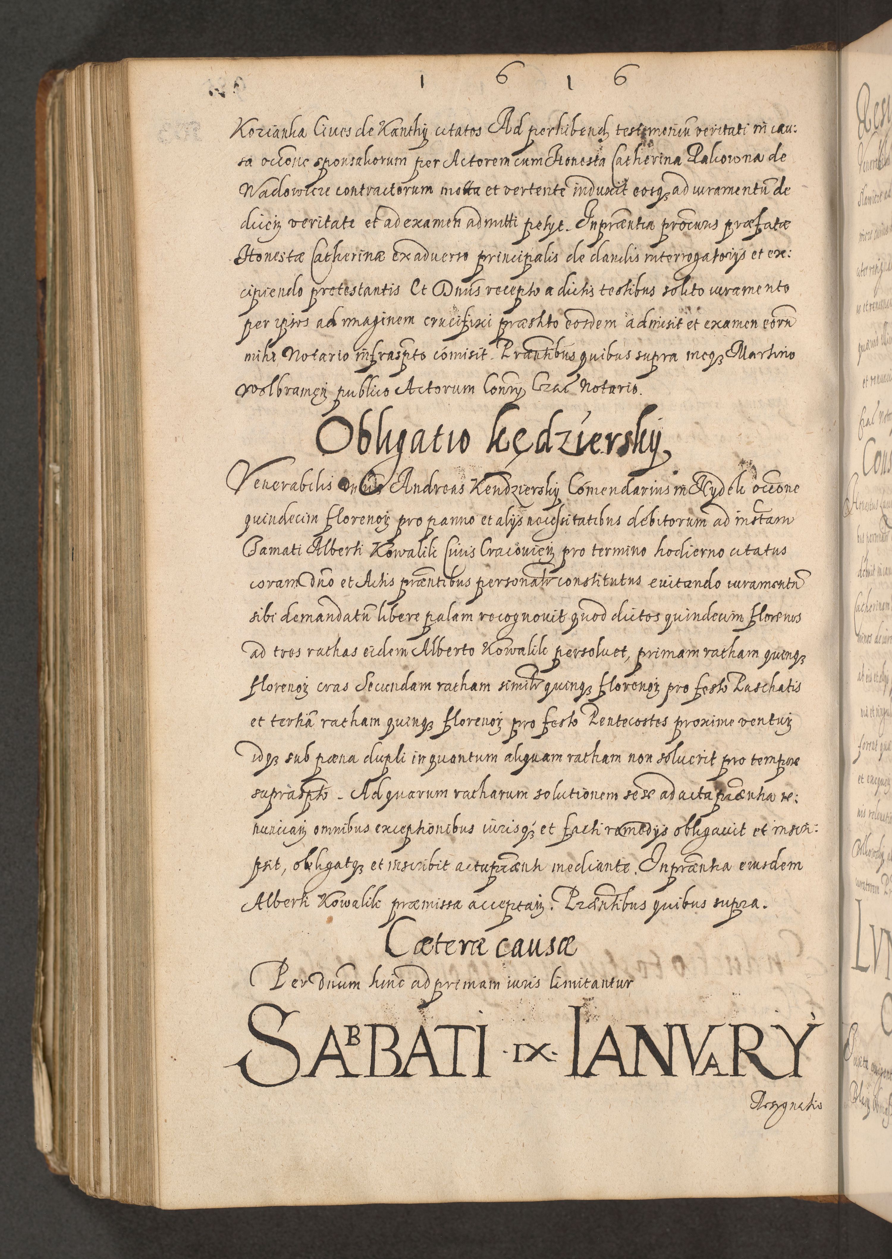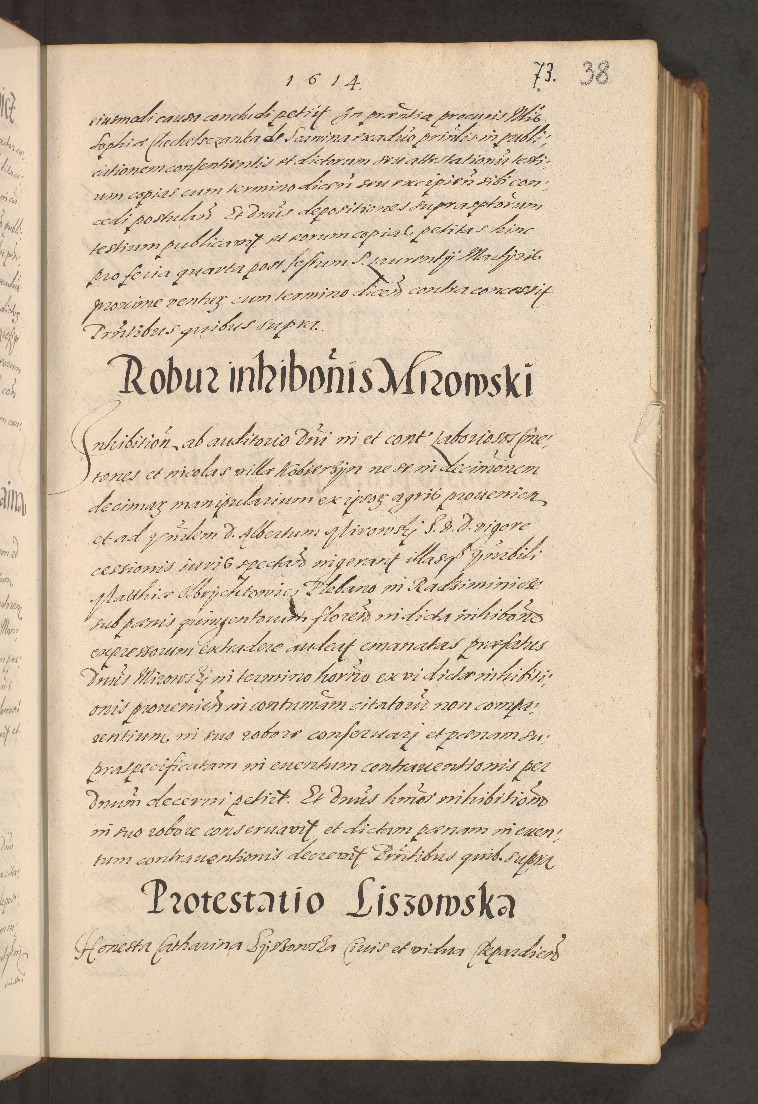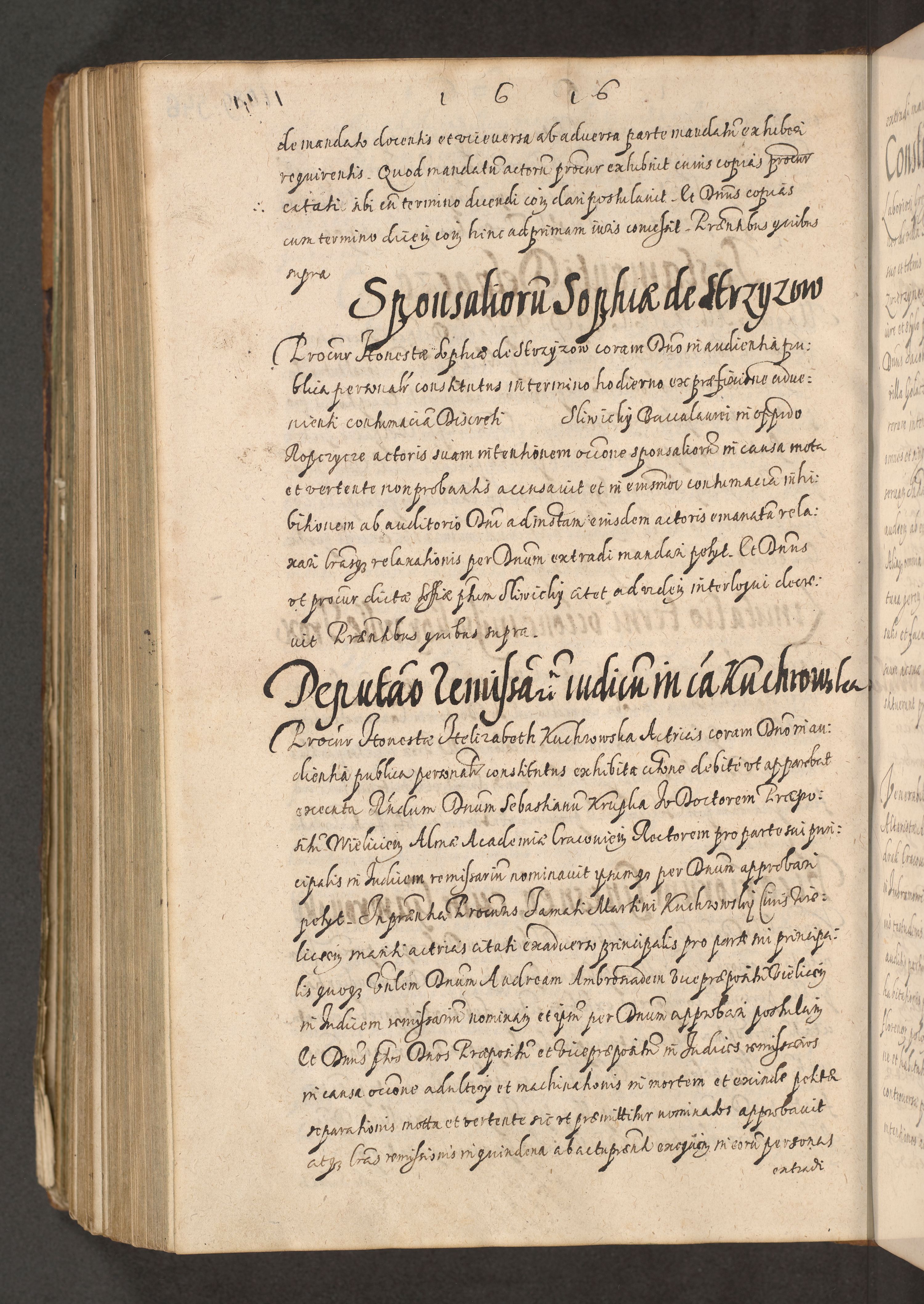 Illustrissimo et Reverendissimo in Christo Patre Domino Domino Petro Tylicki Dei et Apostolice Sedis Gratia Episcopo Cracoviensis Duce Severiensis Acta actorum causarum sententiarum tam interloquutoriarum quam definitivarum decretorum obligationum, quietationum, recognitionum, constitutionum procuratorum etc. etc. coram Admodum Reverendo Domino Thoma Oborski I. V. Doctore Canonico Vicario in Spiritualibus et Officiali generali Cracoviensis in anno Domini Millesimo Sexcentessimo Decimoquarto Cuius Indictio duodecima Pontificus SS. D. N. D. Pauli Divina providentia Papae quinti Anno decimo foeliciter incipiunt