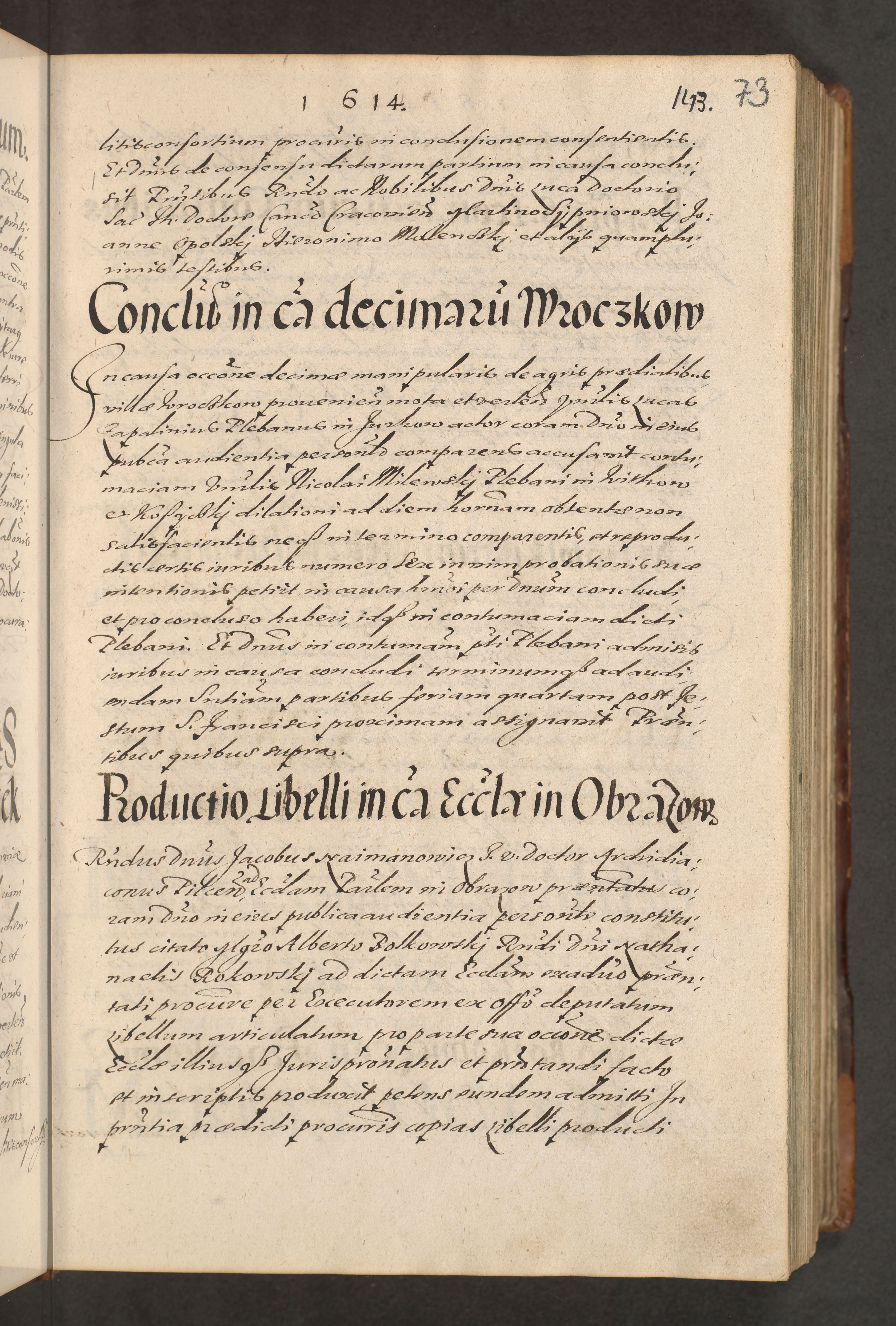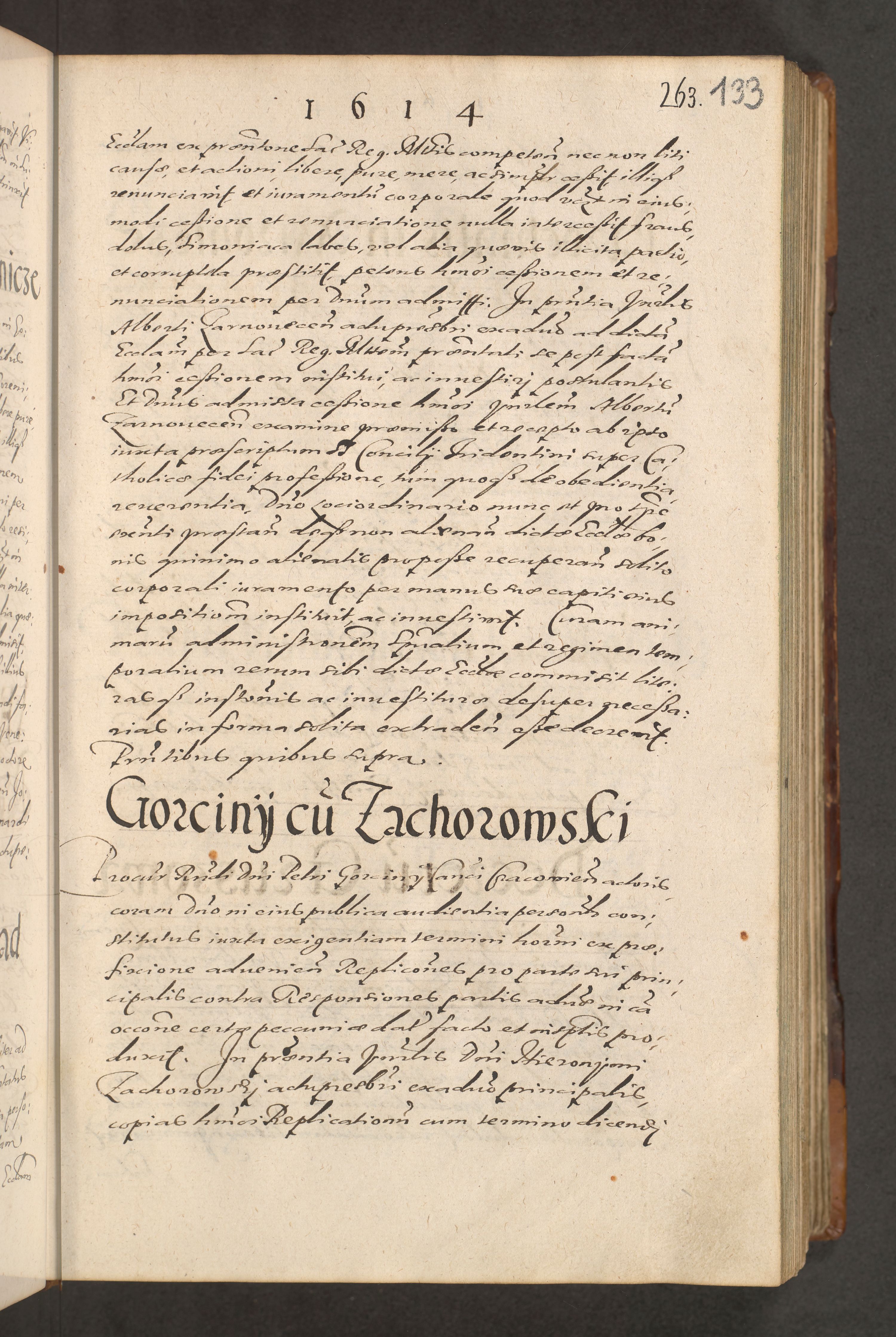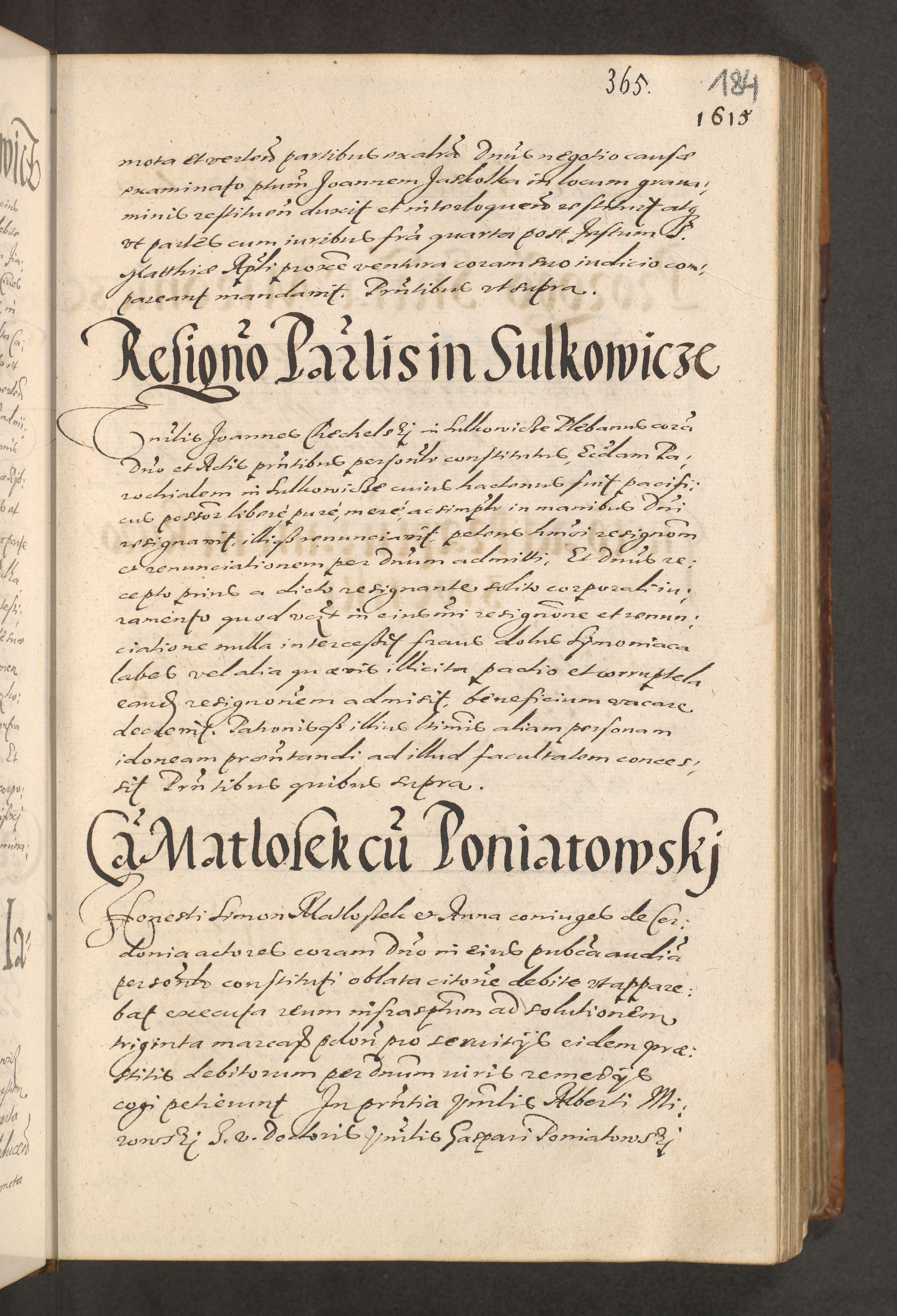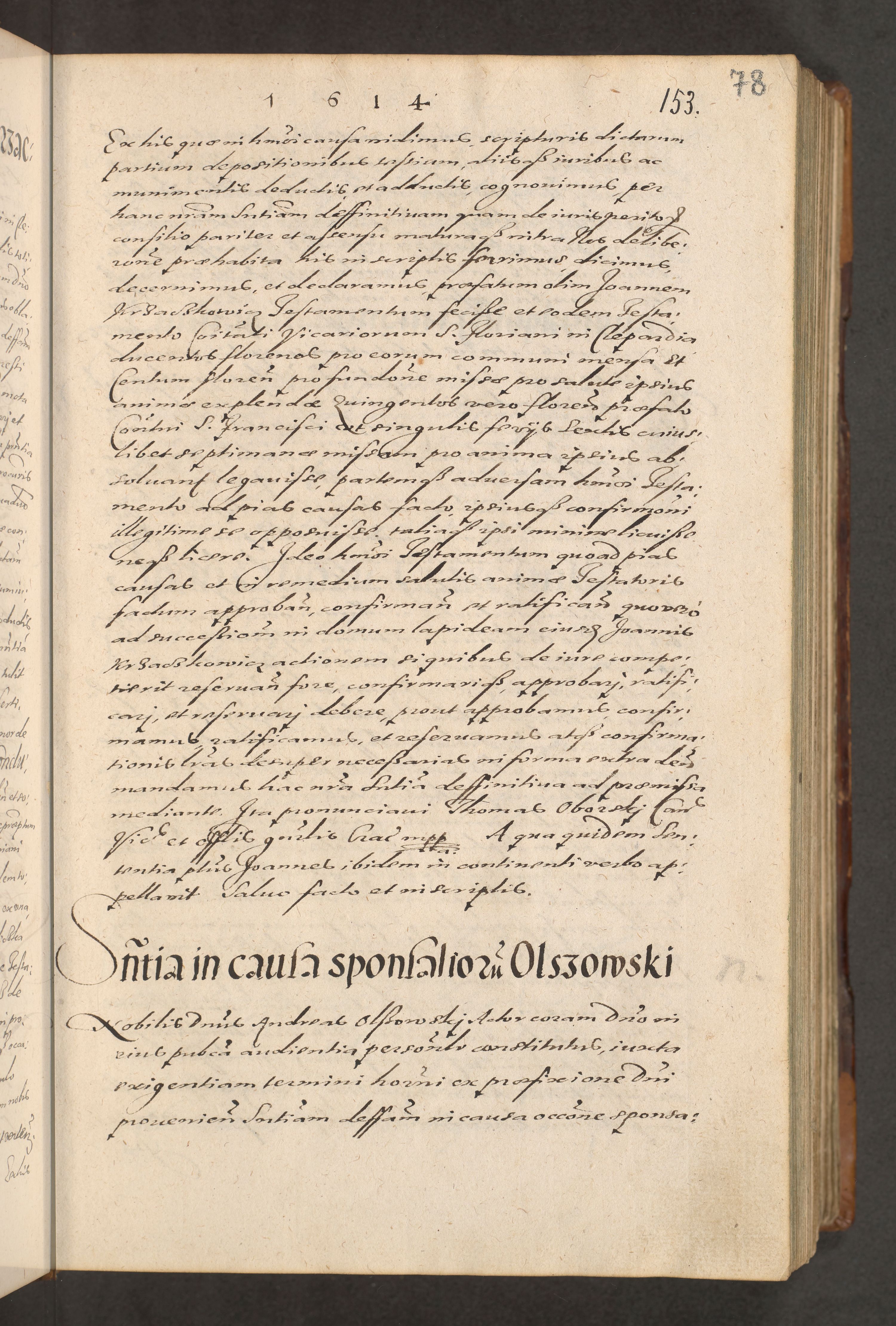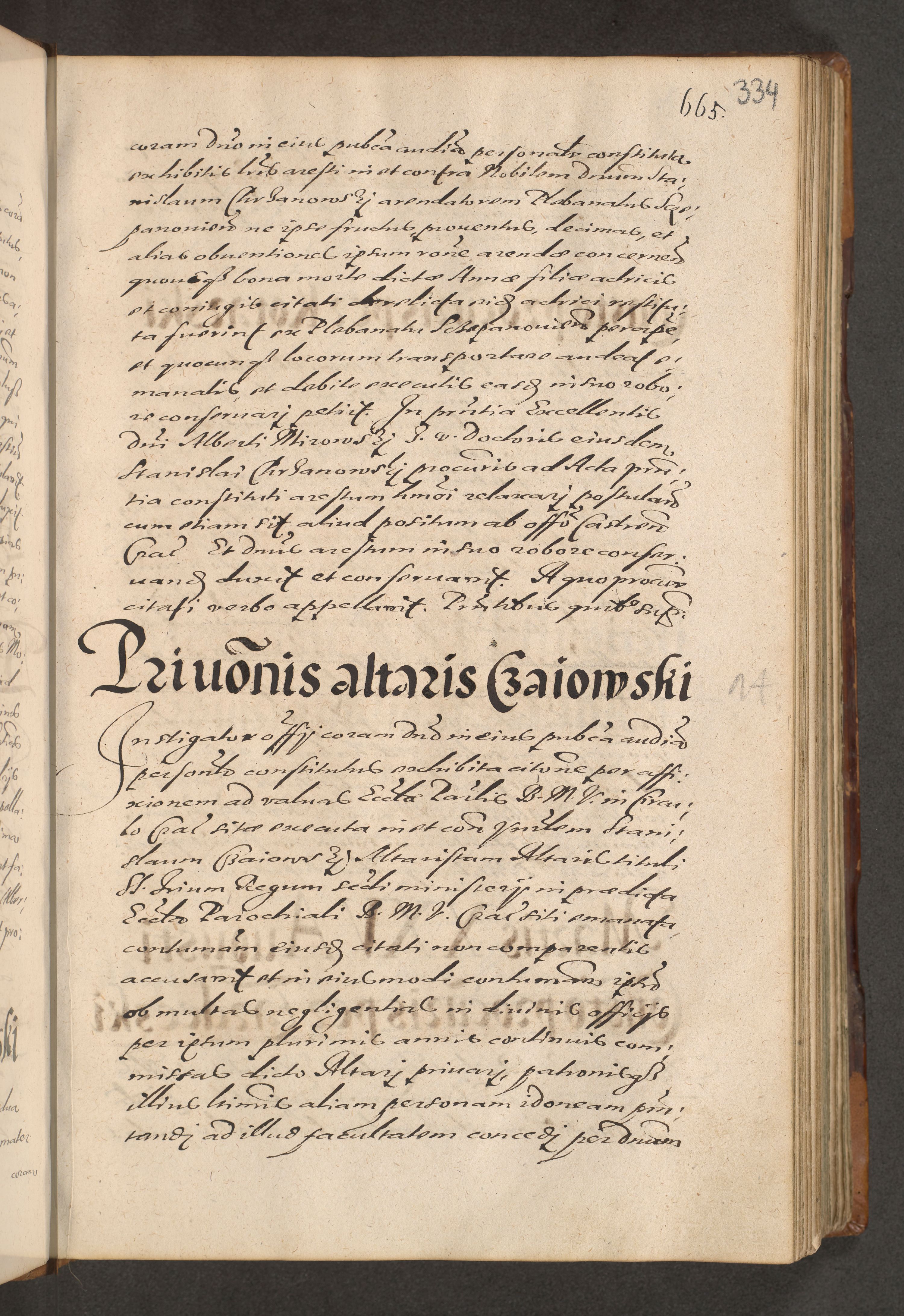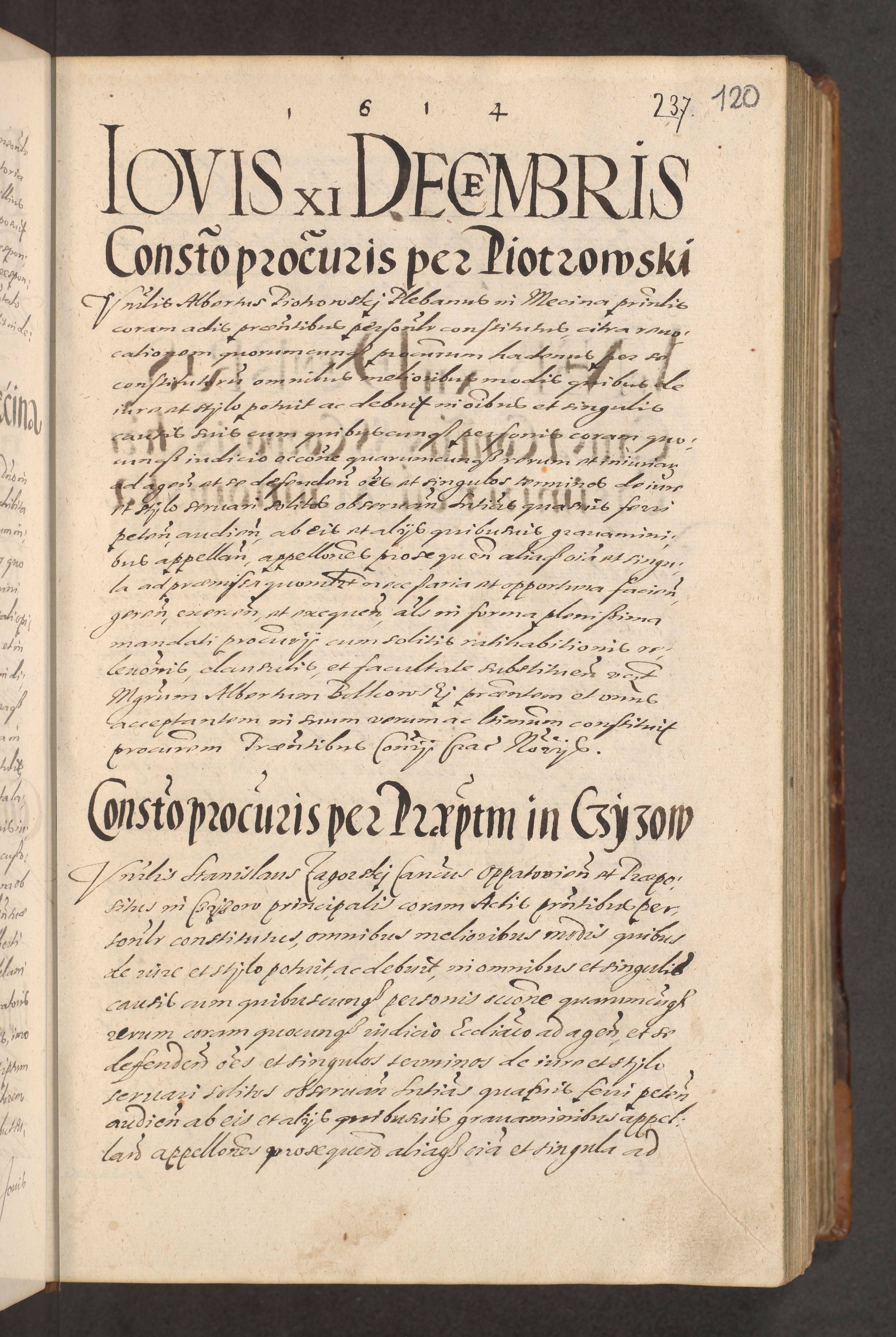Illustrissimo et Reverendissimo in Christo Patre Domino Domino Petro Tylicki Dei et Apostolice Sedis Gratia Episcopo Cracoviensis Duce Severiensis Acta actorum causarum sententiarum tam interloquutoriarum quam definitivarum decretorum obligationum, quietationum, recognitionum, constitutionum procuratorum etc. etc. coram Admodum Reverendo Domino Thoma Oborski I. V. Doctore Canonico Vicario in Spiritualibus et Officiali generali Cracoviensis in anno Domini Millesimo Sexcentessimo Decimoquarto Cuius Indictio duodecima Pontificus SS. D. N. D. Pauli Divina providentia Papae quinti Anno decimo foeliciter incipiunt
