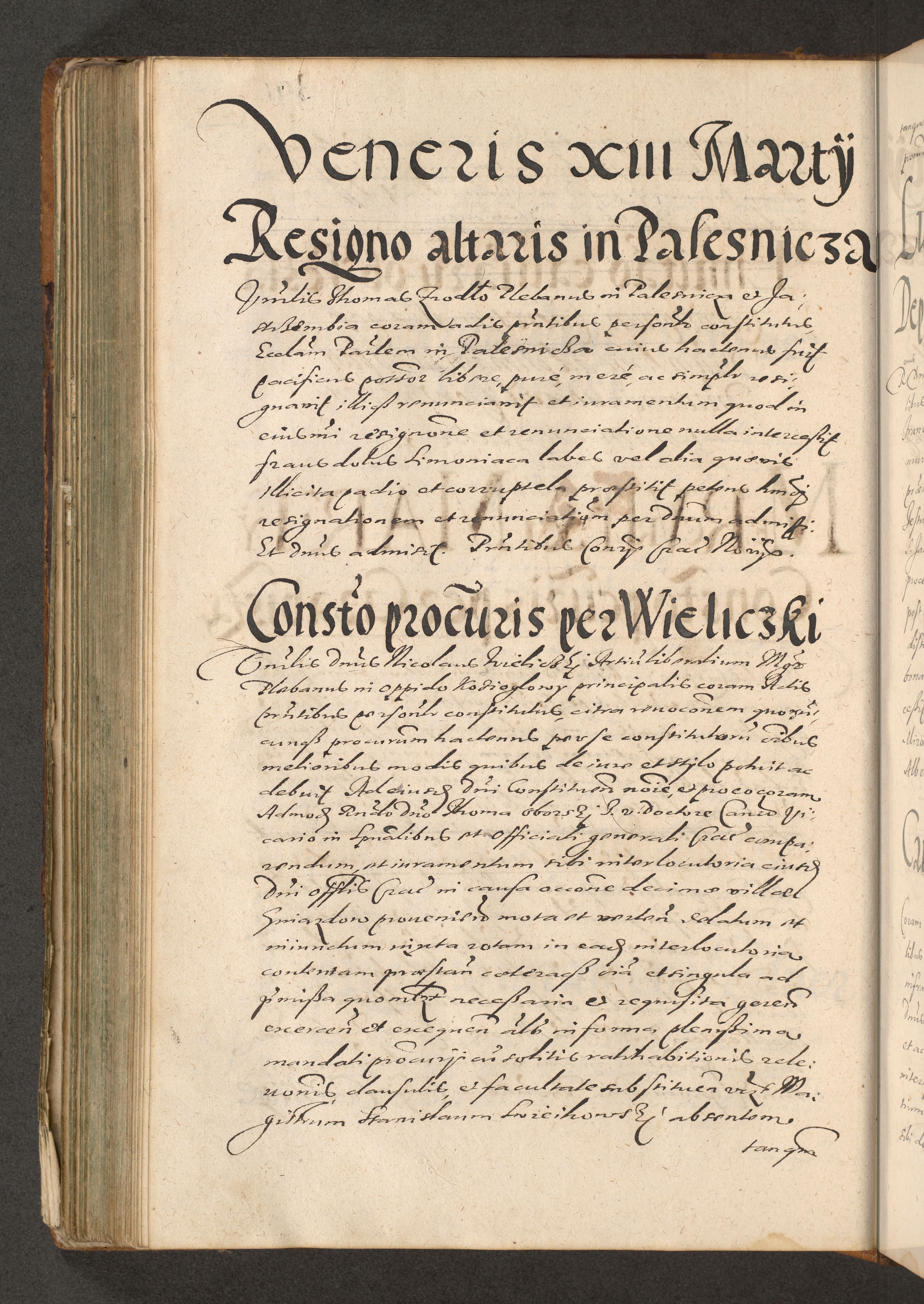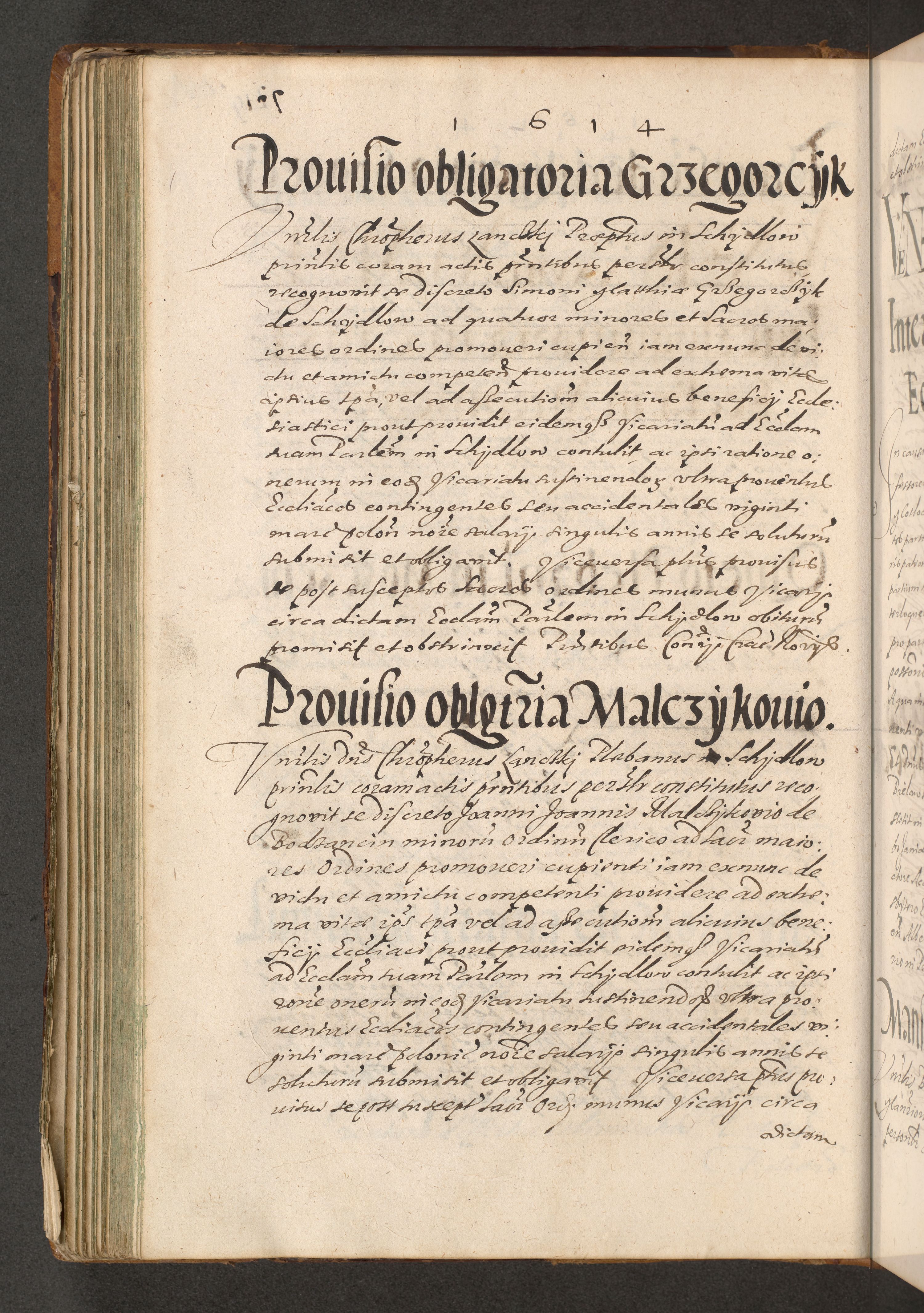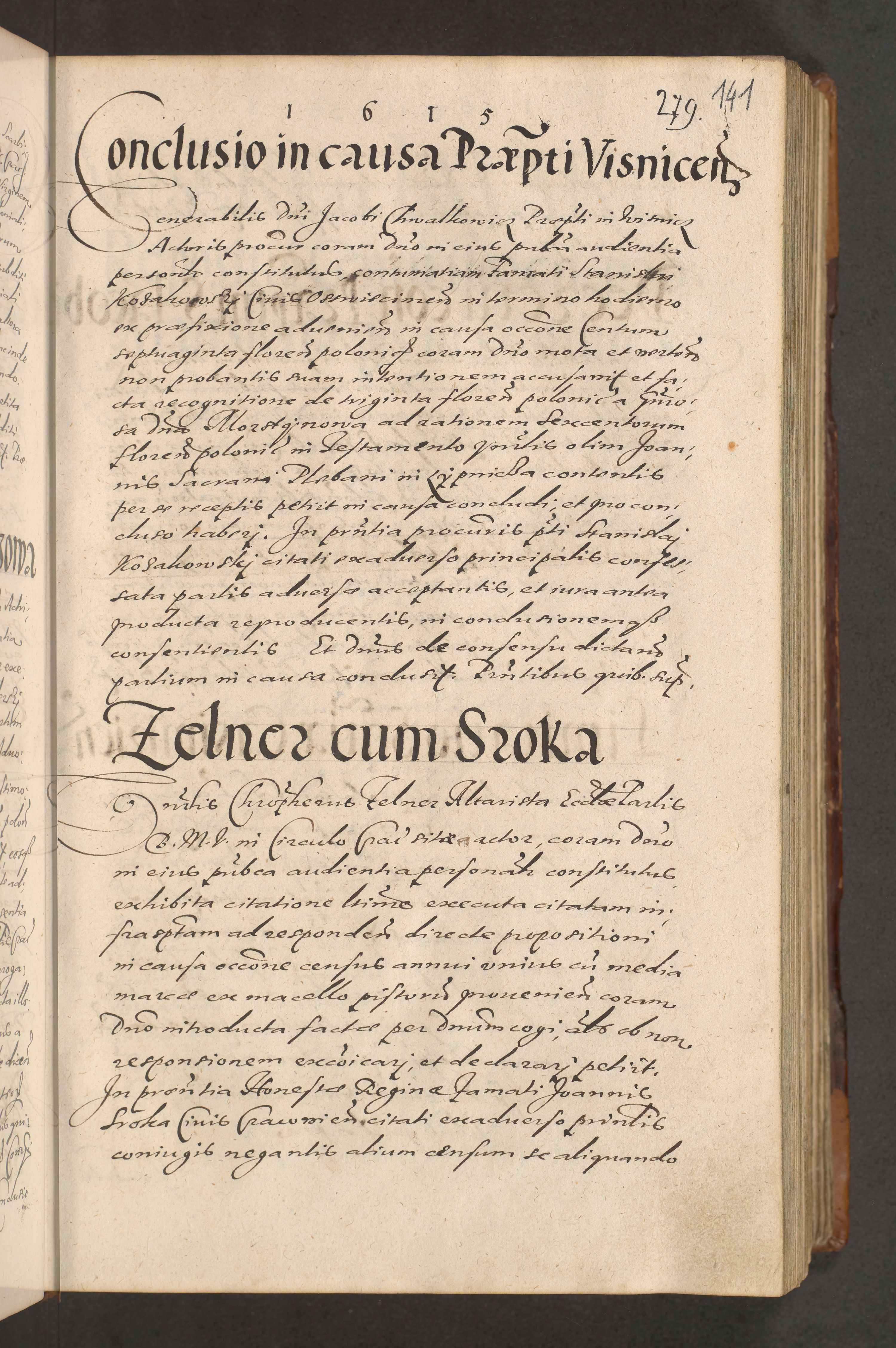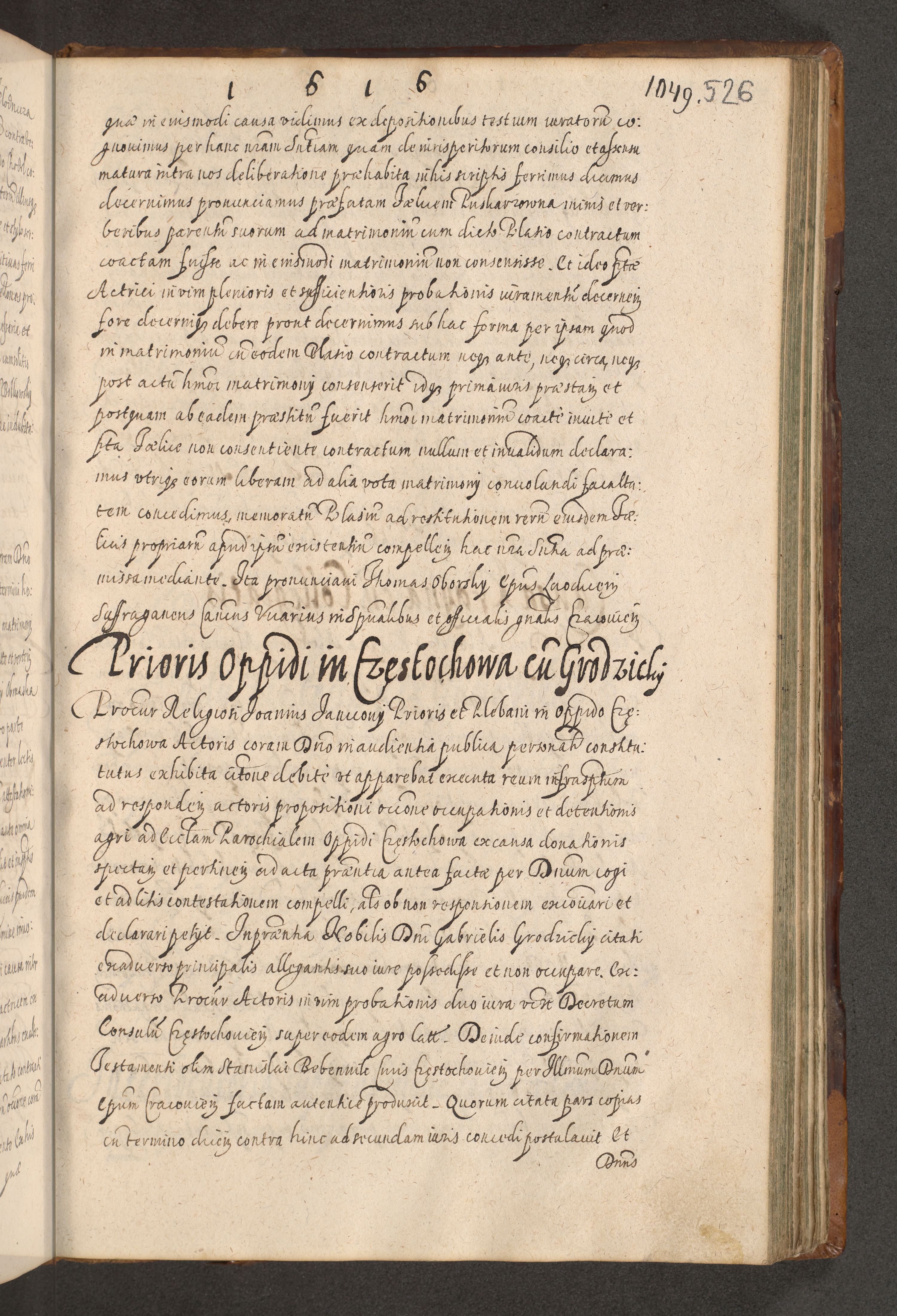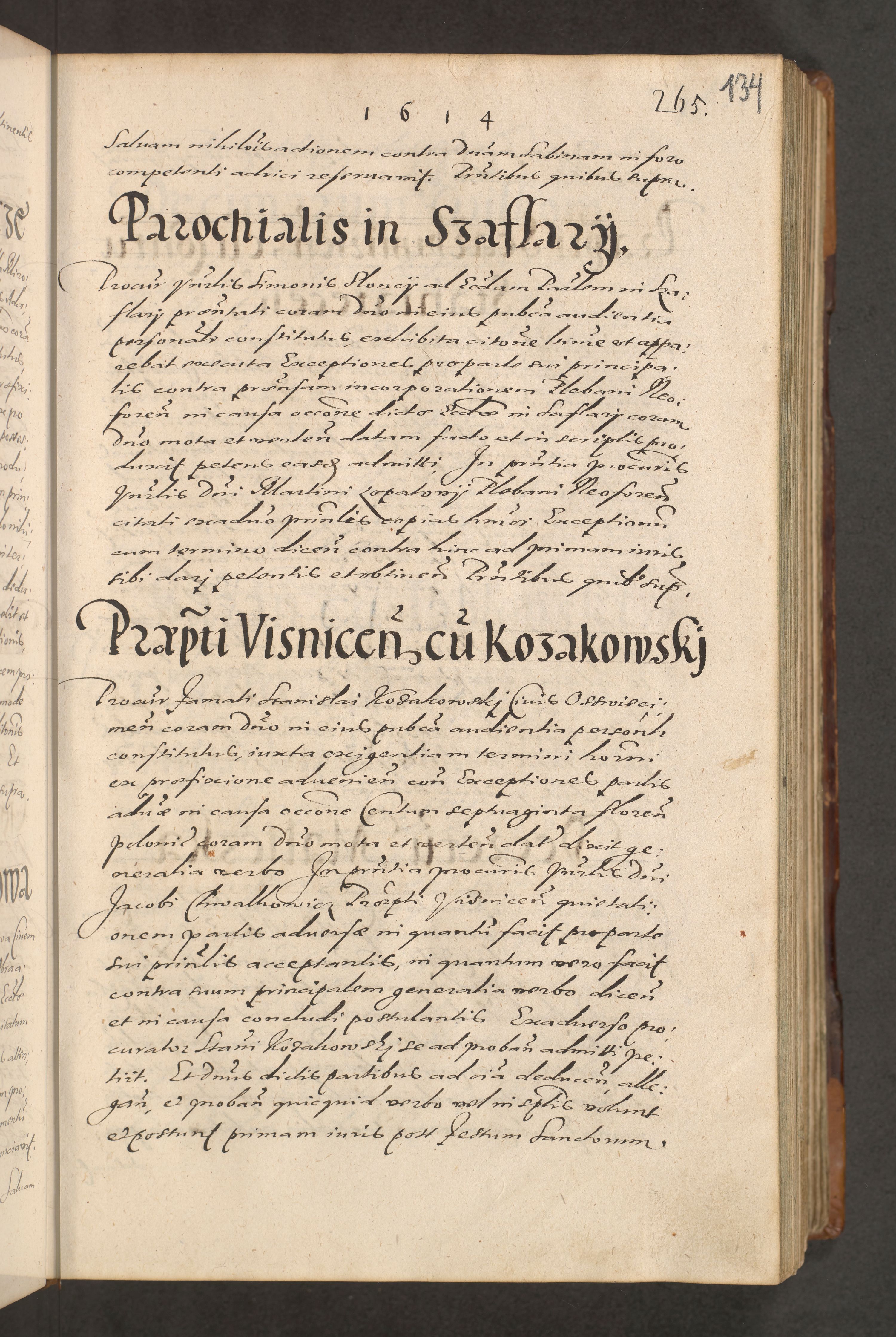 Illustrissimo et Reverendissimo in Christo Patre Domino Domino Petro Tylicki Dei et Apostolice Sedis Gratia Episcopo Cracoviensis Duce Severiensis Acta actorum causarum sententiarum tam interloquutoriarum quam definitivarum decretorum obligationum, quietationum, recognitionum, constitutionum procuratorum etc. etc. coram Admodum Reverendo Domino Thoma Oborski I. V. Doctore Canonico Vicario in Spiritualibus et Officiali generali Cracoviensis in anno Domini Millesimo Sexcentessimo Decimoquarto Cuius Indictio duodecima Pontificus SS. D. N. D. Pauli Divina providentia Papae quinti Anno decimo foeliciter incipiunt