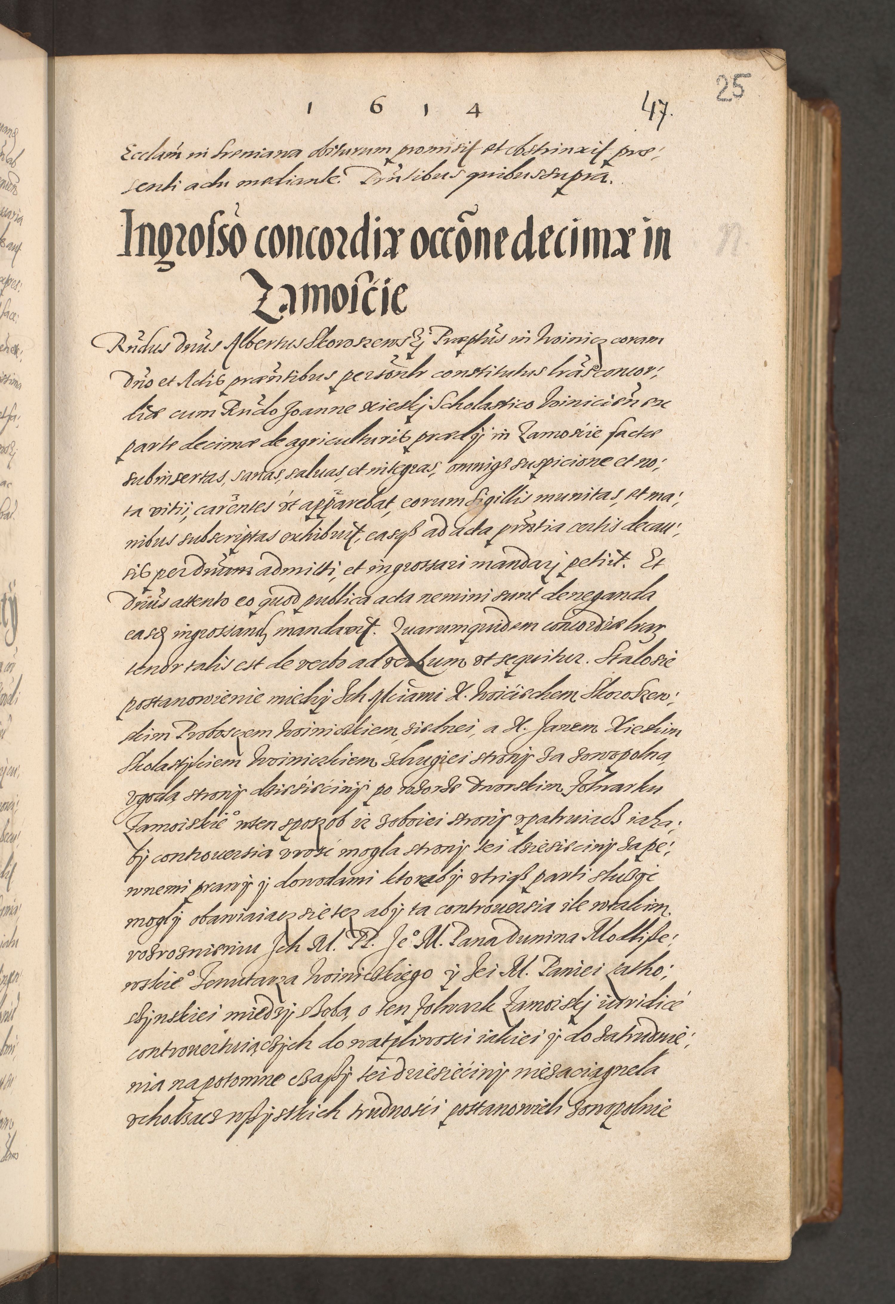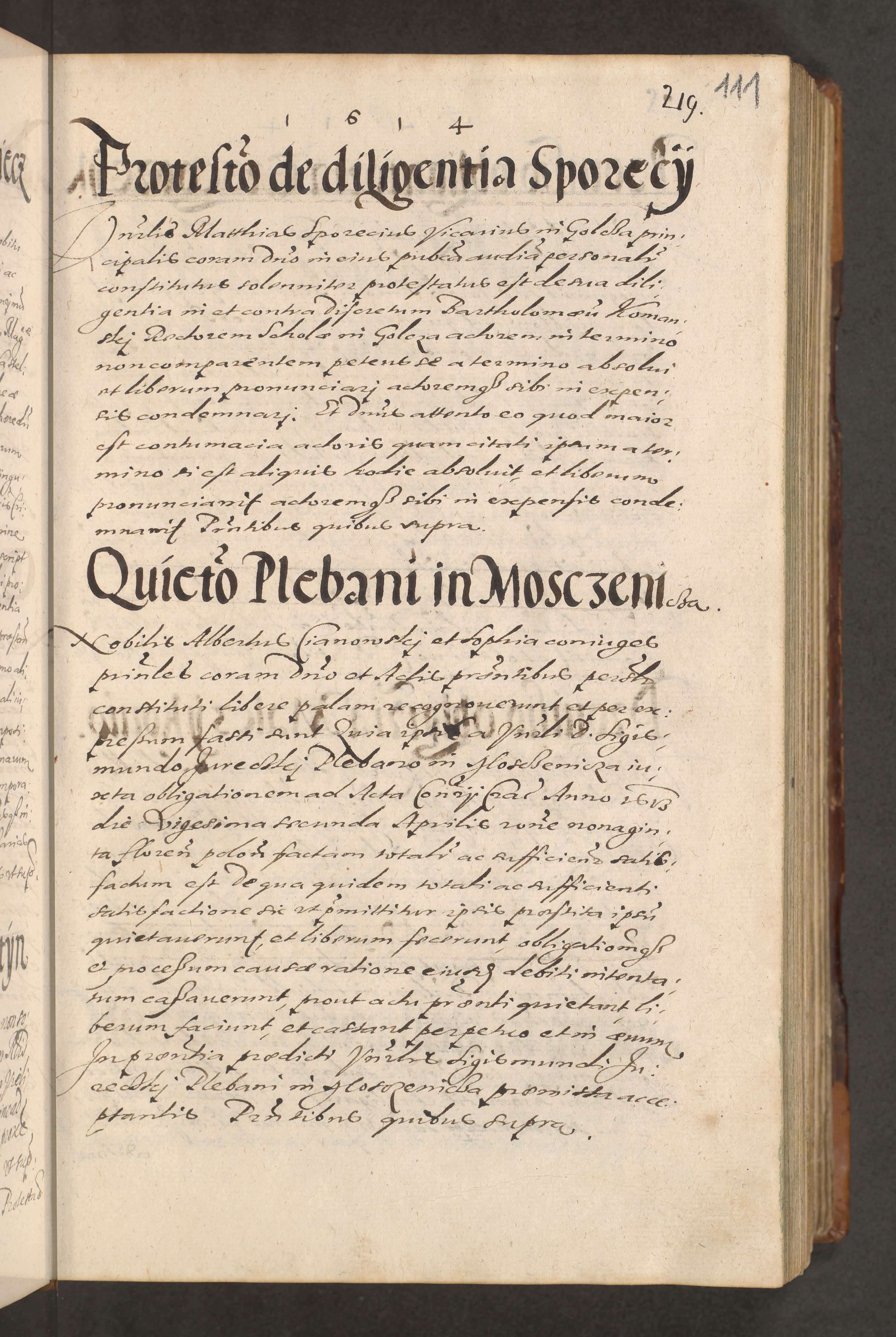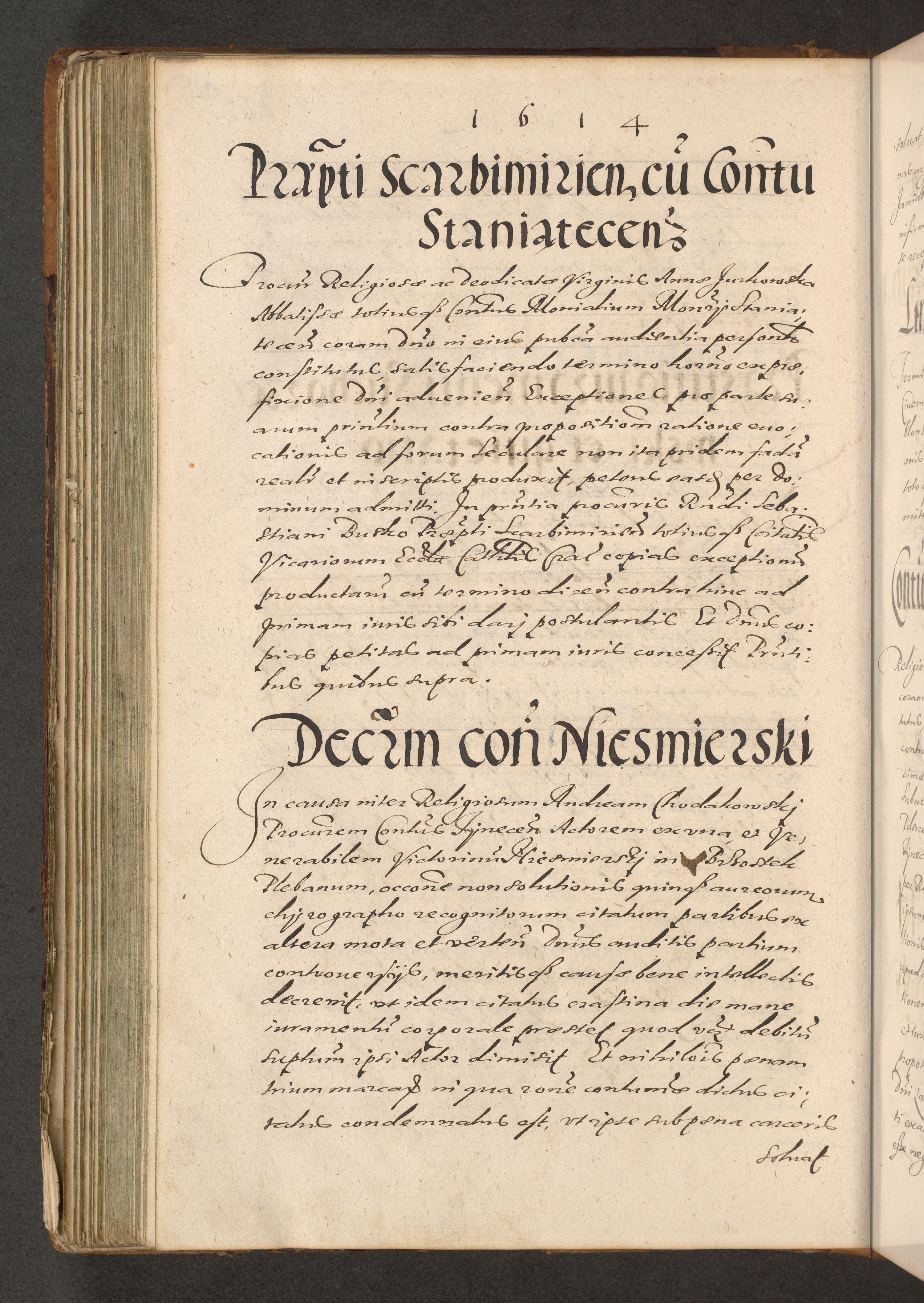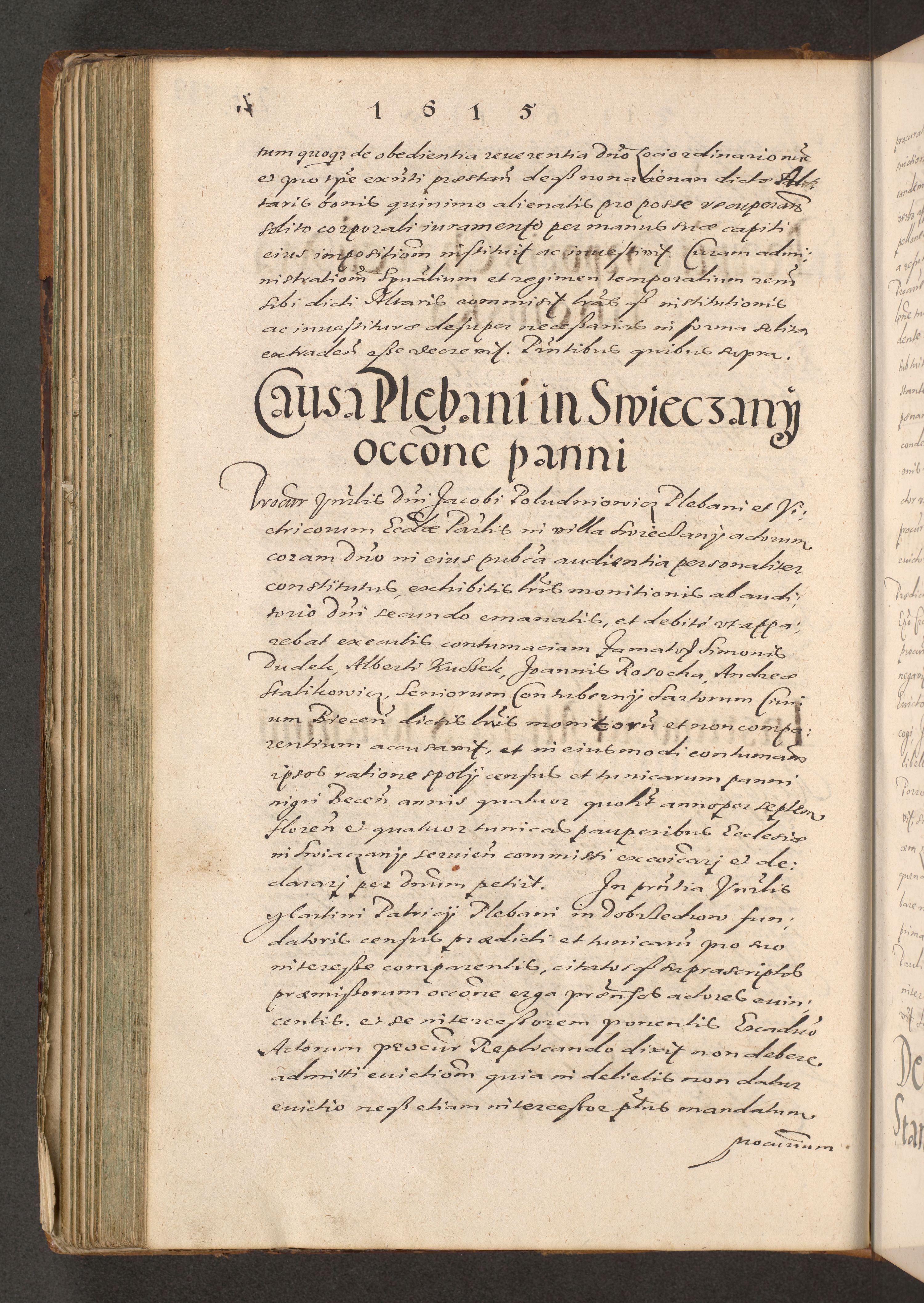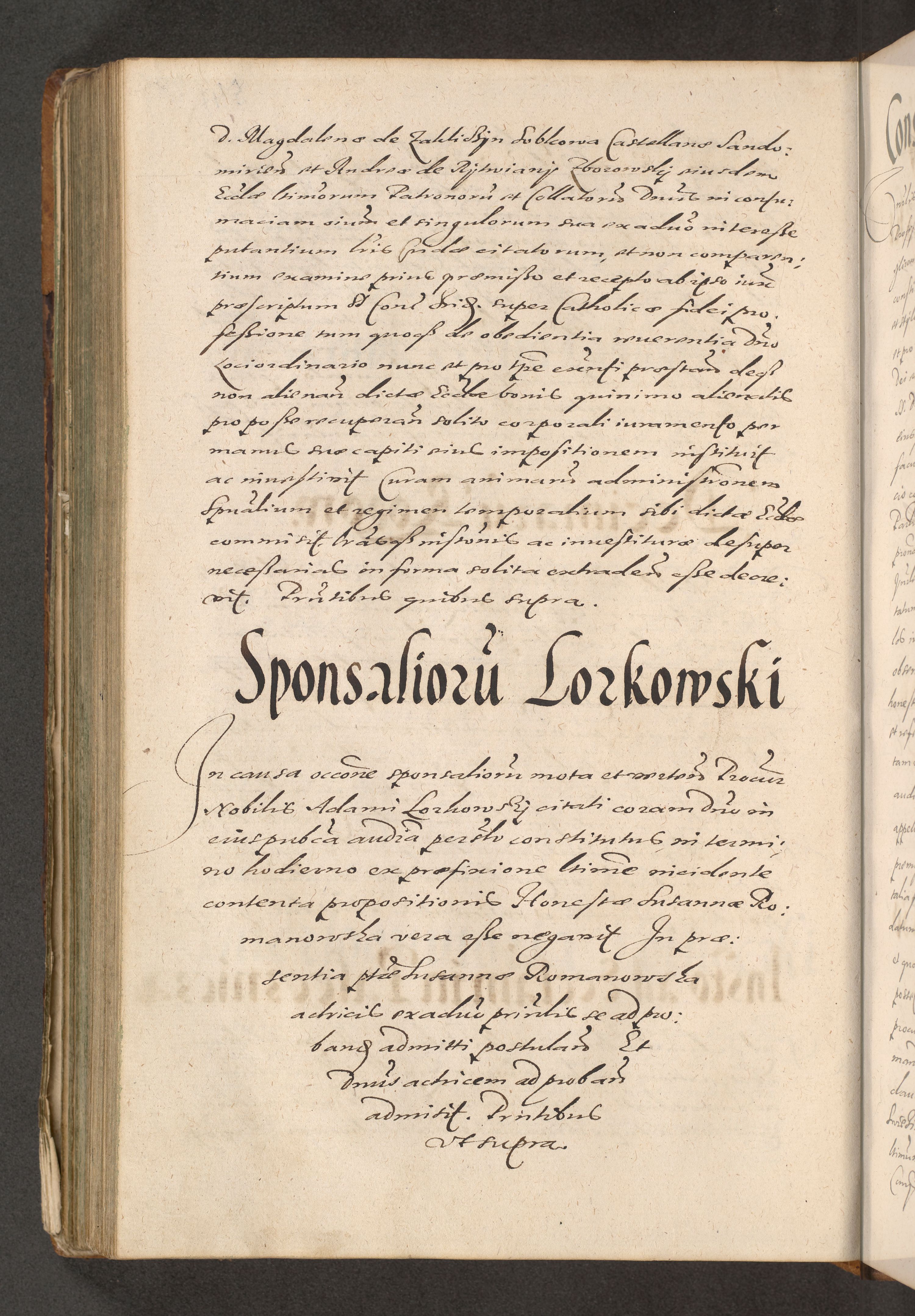 Illustrissimo et Reverendissimo in Christo Patre Domino Domino Petro Tylicki Dei et Apostolice Sedis Gratia Episcopo Cracoviensis Duce Severiensis Acta actorum causarum sententiarum tam interloquutoriarum quam definitivarum decretorum obligationum, quietationum, recognitionum, constitutionum procuratorum etc. etc. coram Admodum Reverendo Domino Thoma Oborski I. V. Doctore Canonico Vicario in Spiritualibus et Officiali generali Cracoviensis in anno Domini Millesimo Sexcentessimo Decimoquarto Cuius Indictio duodecima Pontificus SS. D. N. D. Pauli Divina providentia Papae quinti Anno decimo foeliciter incipiunt