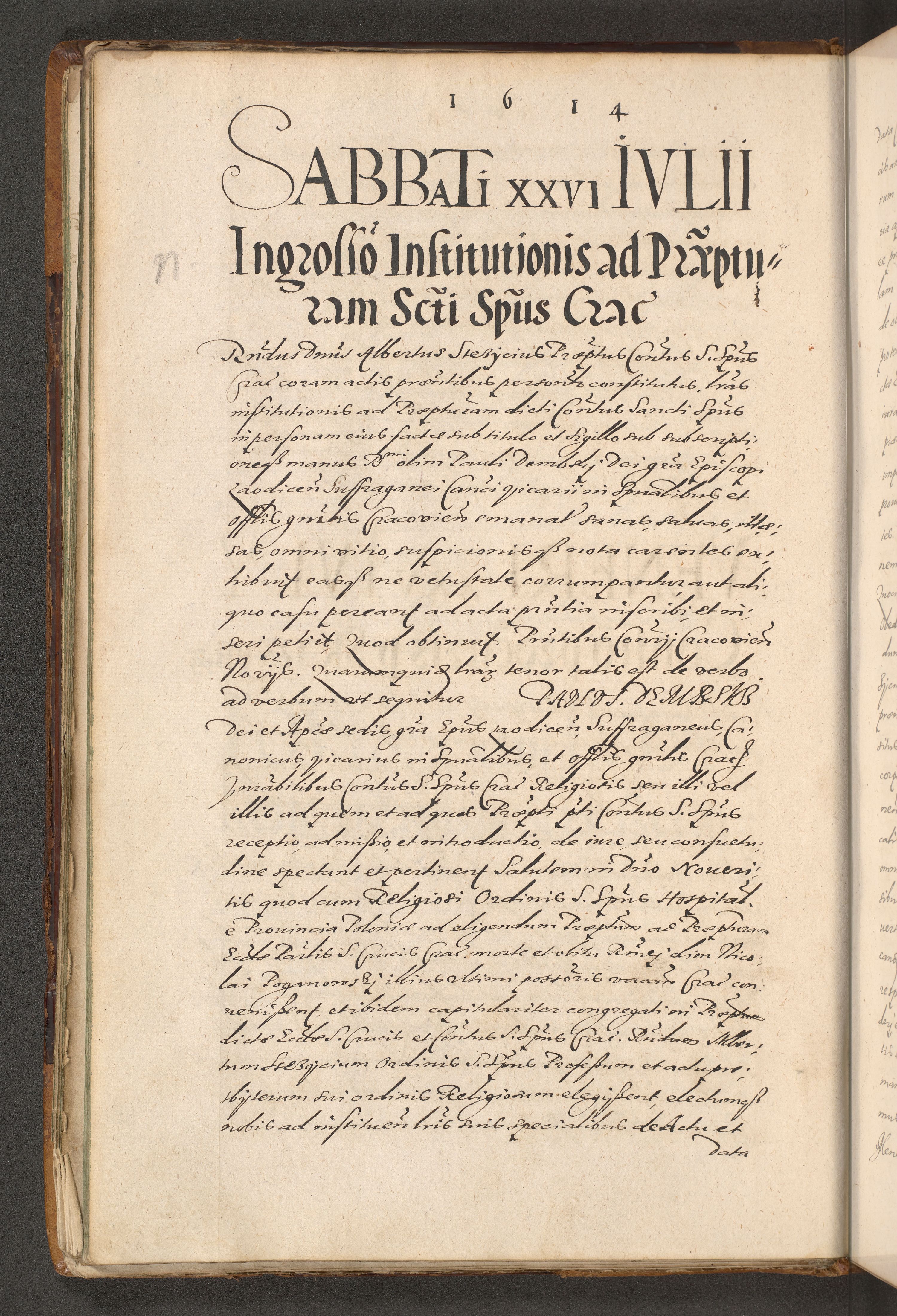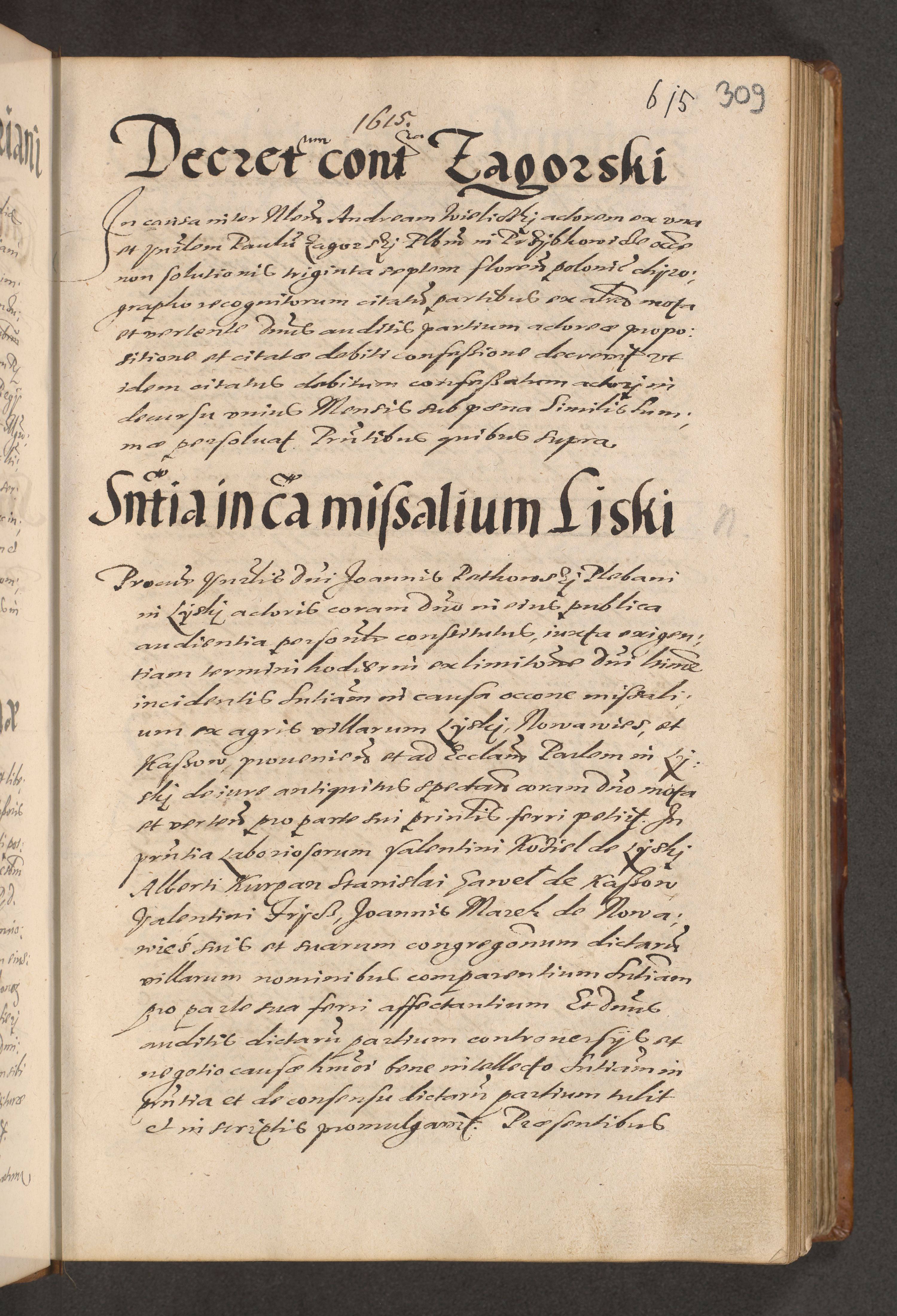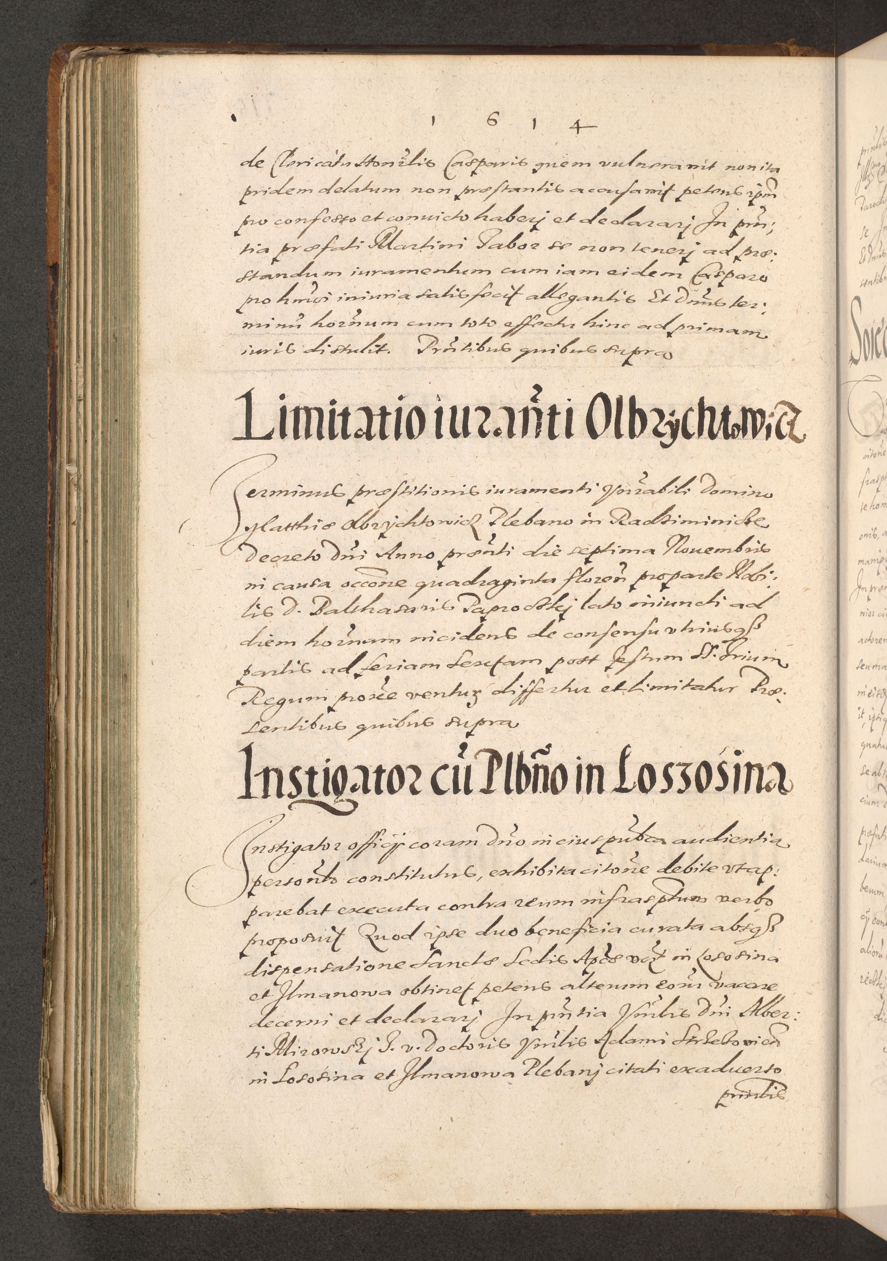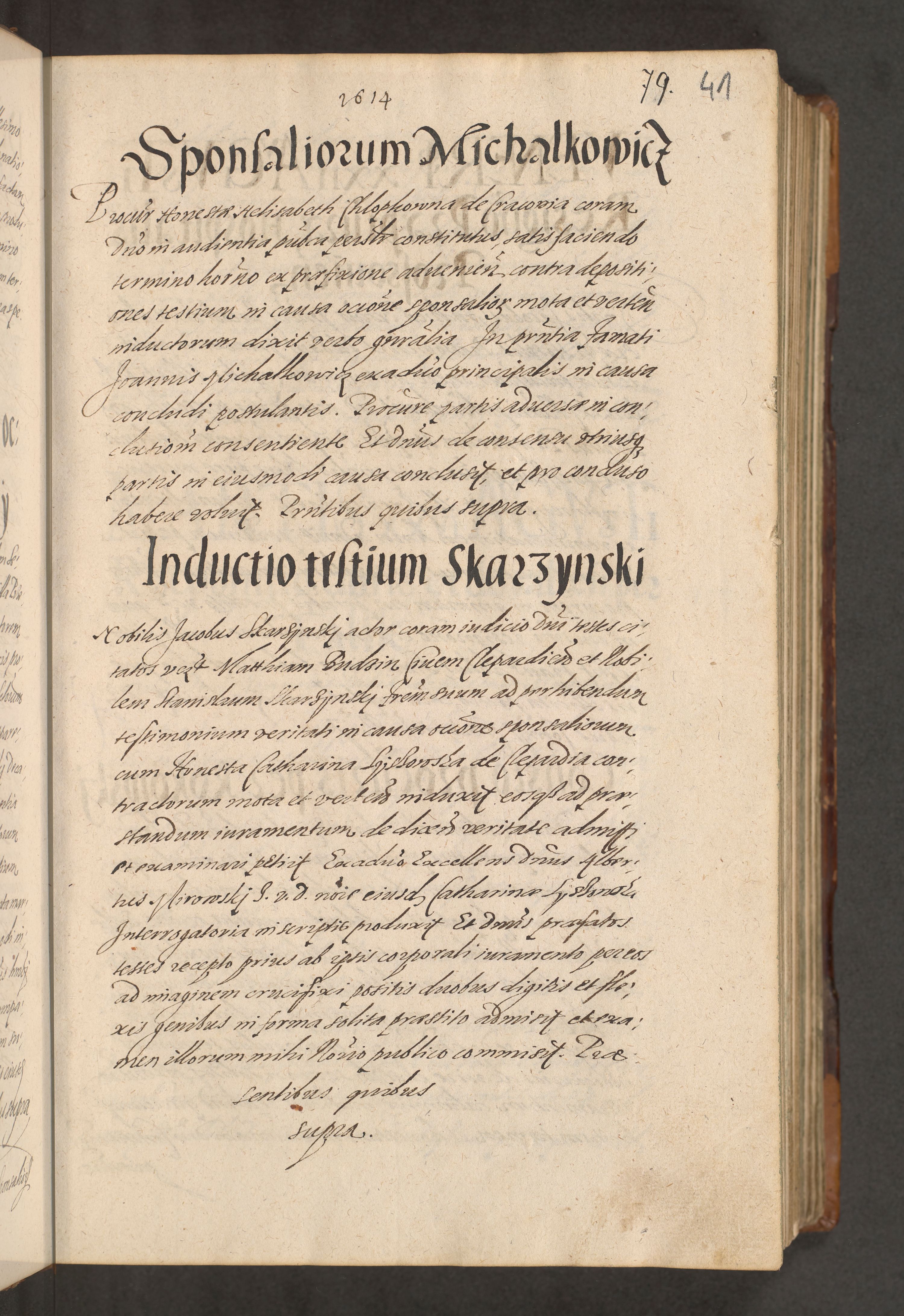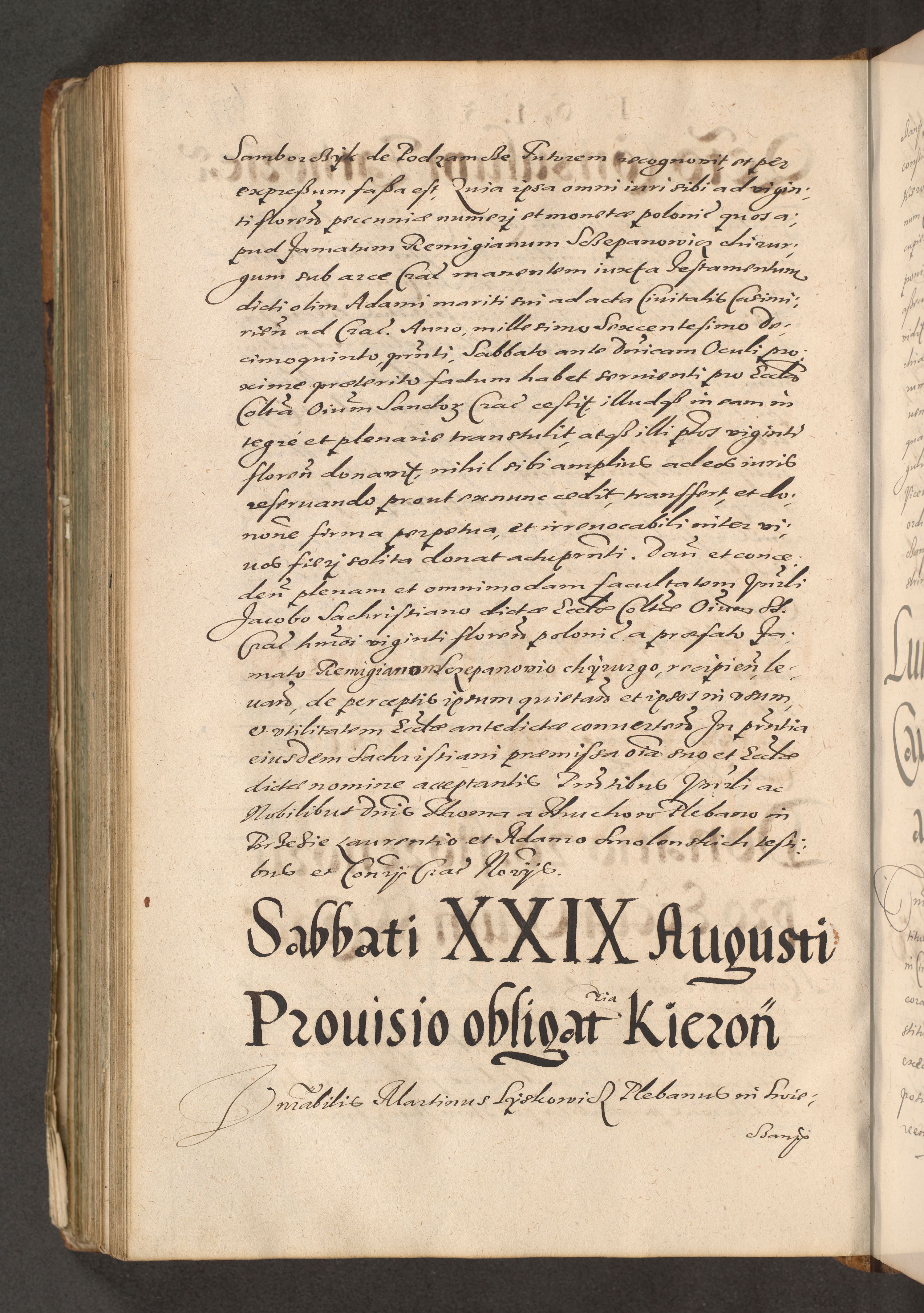 Illustrissimo et Reverendissimo in Christo Patre Domino Domino Petro Tylicki Dei et Apostolice Sedis Gratia Episcopo Cracoviensis Duce Severiensis Acta actorum causarum sententiarum tam interloquutoriarum quam definitivarum decretorum obligationum, quietationum, recognitionum, constitutionum procuratorum etc. etc. coram Admodum Reverendo Domino Thoma Oborski I. V. Doctore Canonico Vicario in Spiritualibus et Officiali generali Cracoviensis in anno Domini Millesimo Sexcentessimo Decimoquarto Cuius Indictio duodecima Pontificus SS. D. N. D. Pauli Divina providentia Papae quinti Anno decimo foeliciter incipiunt