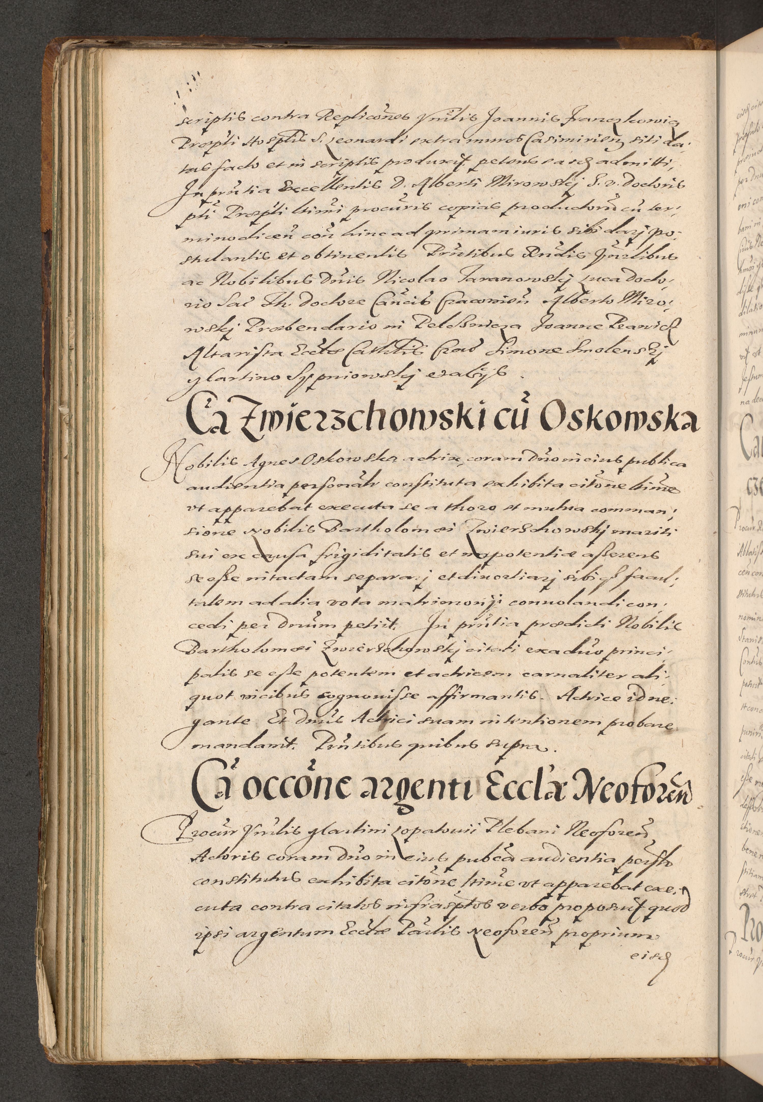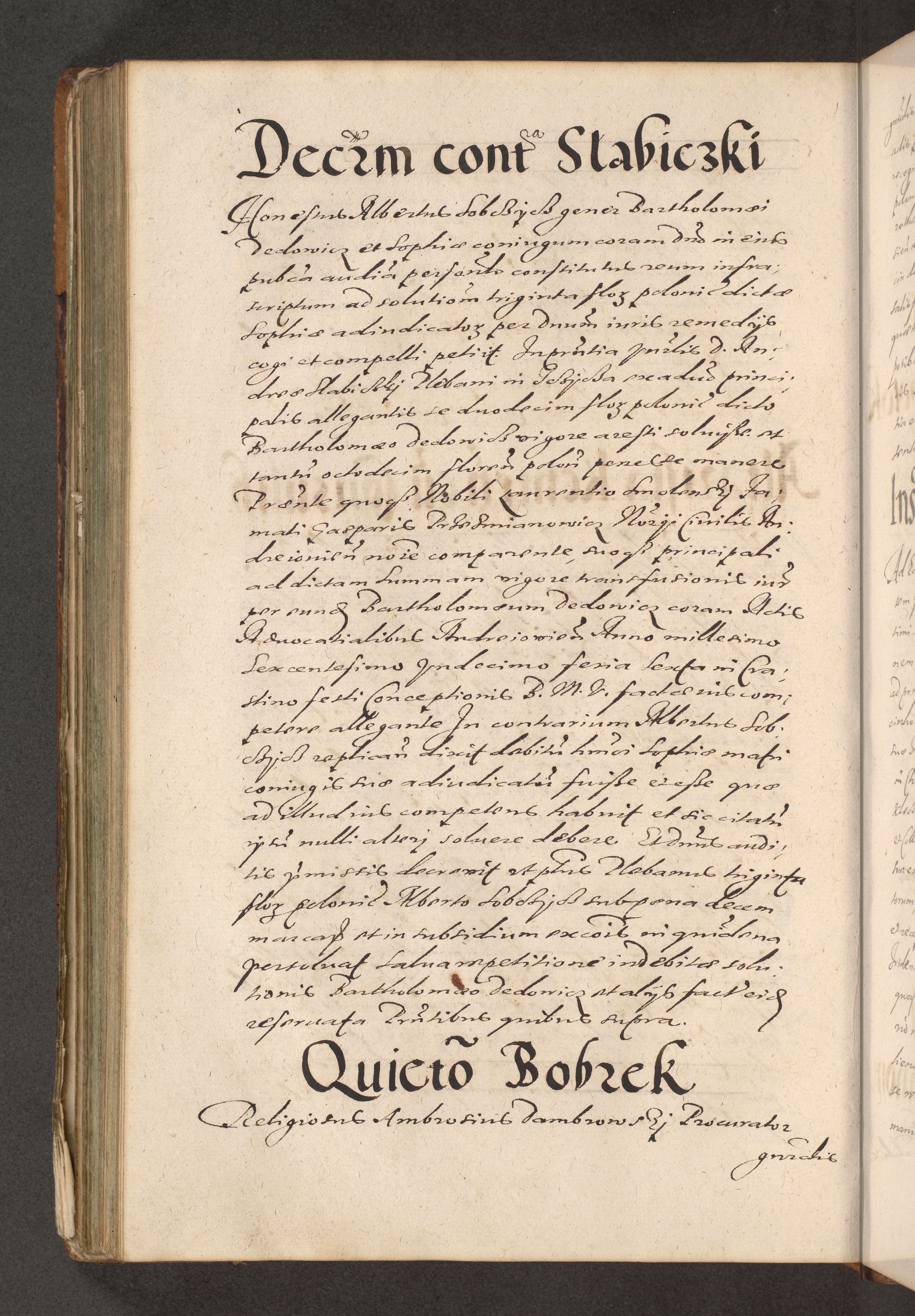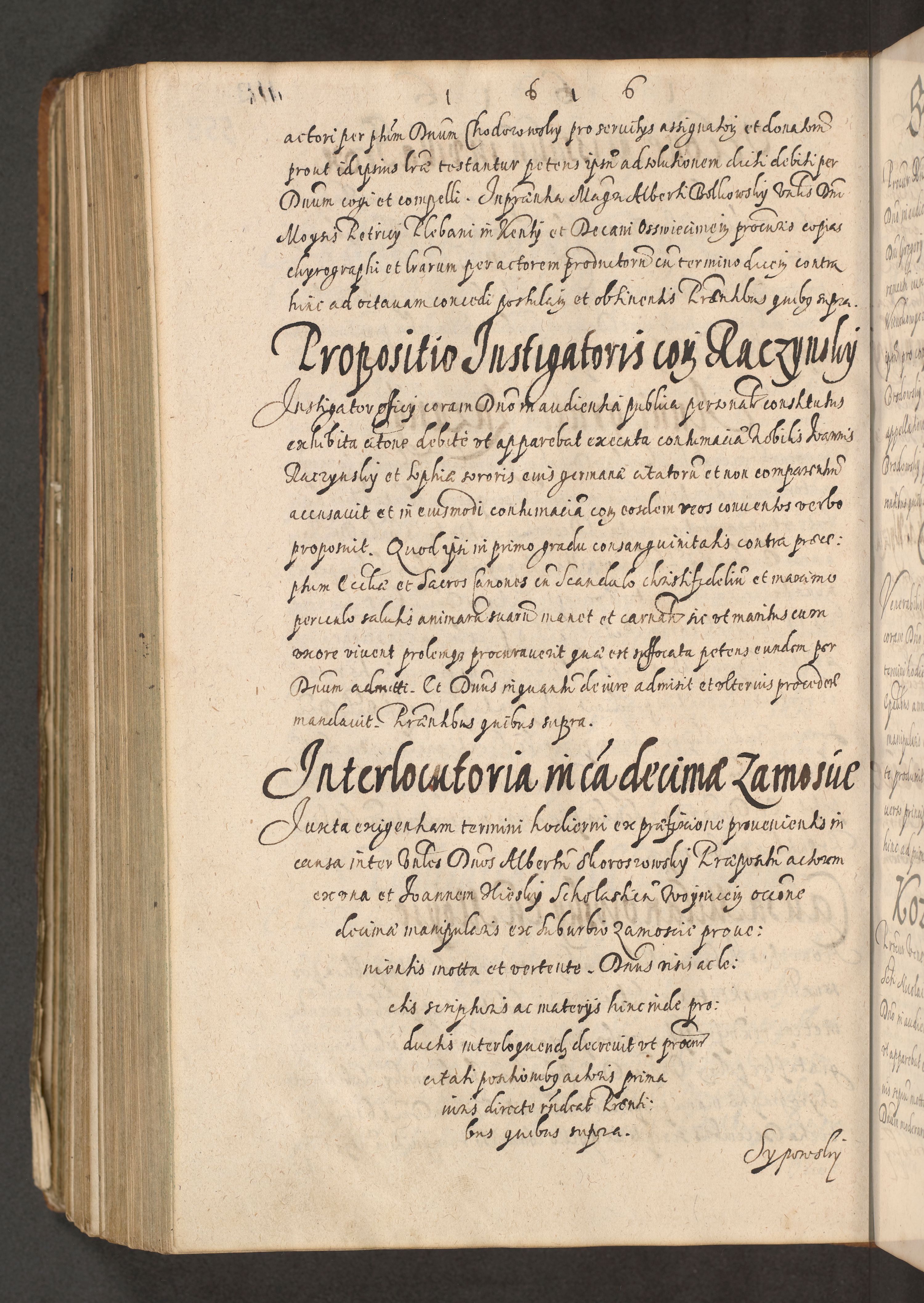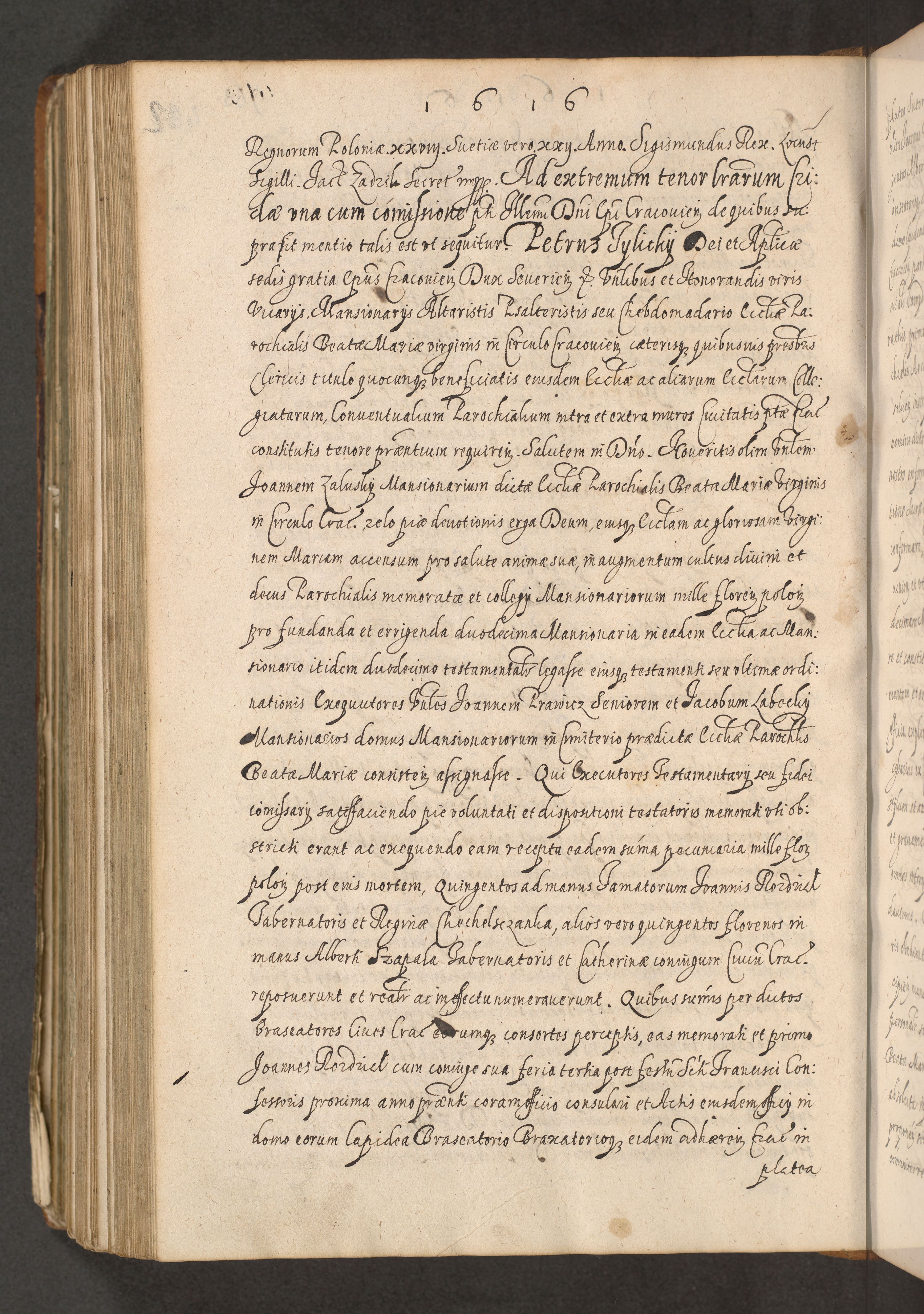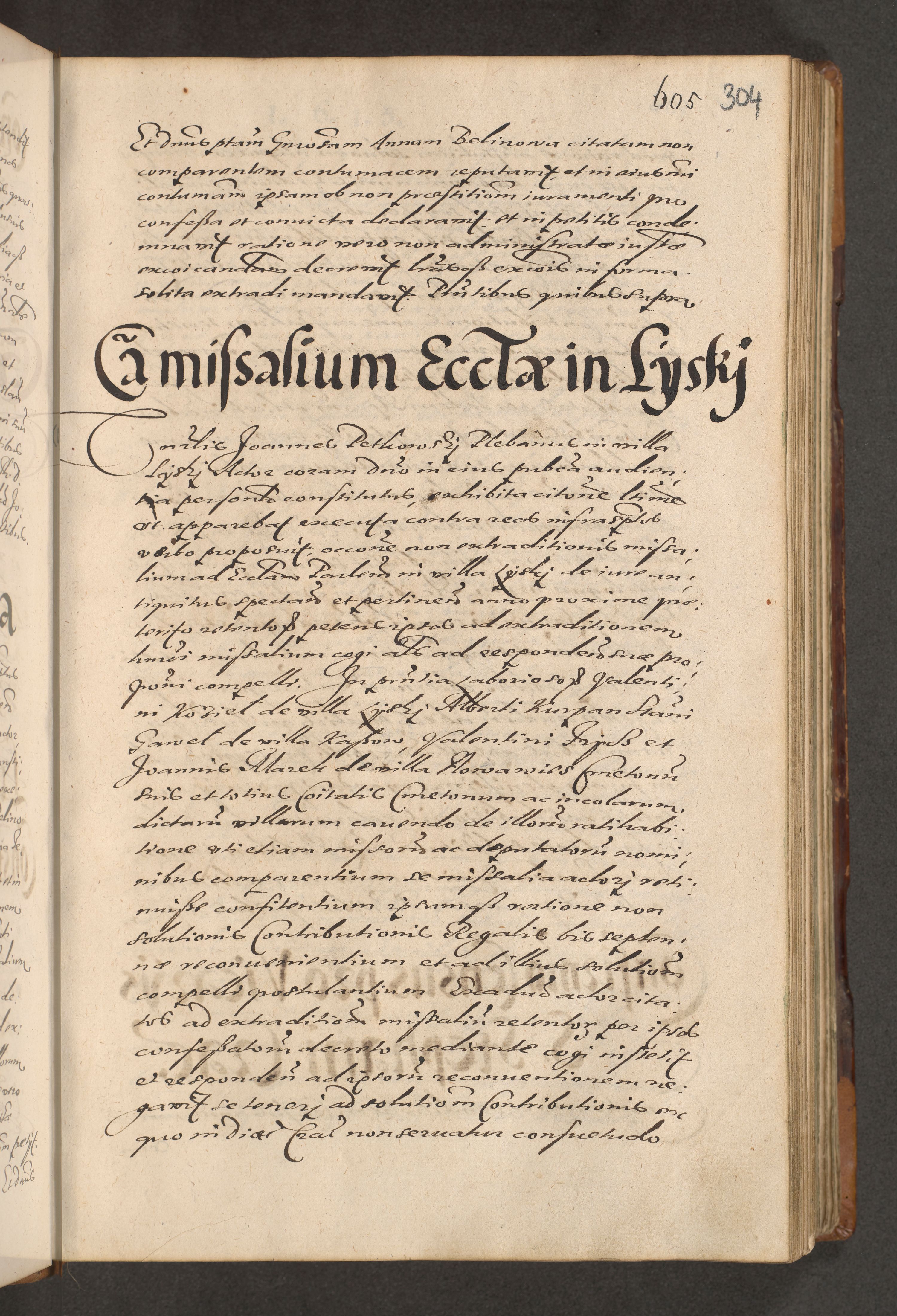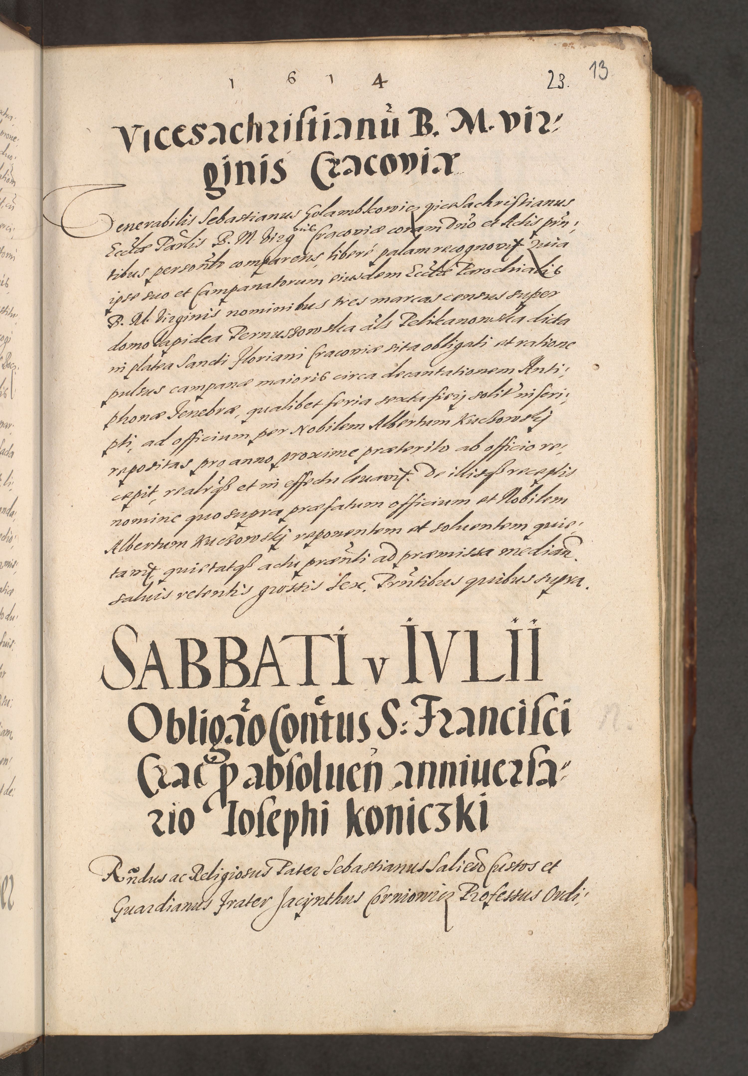 Illustrissimo et Reverendissimo in Christo Patre Domino Domino Petro Tylicki Dei et Apostolice Sedis Gratia Episcopo Cracoviensis Duce Severiensis Acta actorum causarum sententiarum tam interloquutoriarum quam definitivarum decretorum obligationum, quietationum, recognitionum, constitutionum procuratorum etc. etc. coram Admodum Reverendo Domino Thoma Oborski I. V. Doctore Canonico Vicario in Spiritualibus et Officiali generali Cracoviensis in anno Domini Millesimo Sexcentessimo Decimoquarto Cuius Indictio duodecima Pontificus SS. D. N. D. Pauli Divina providentia Papae quinti Anno decimo foeliciter incipiunt
