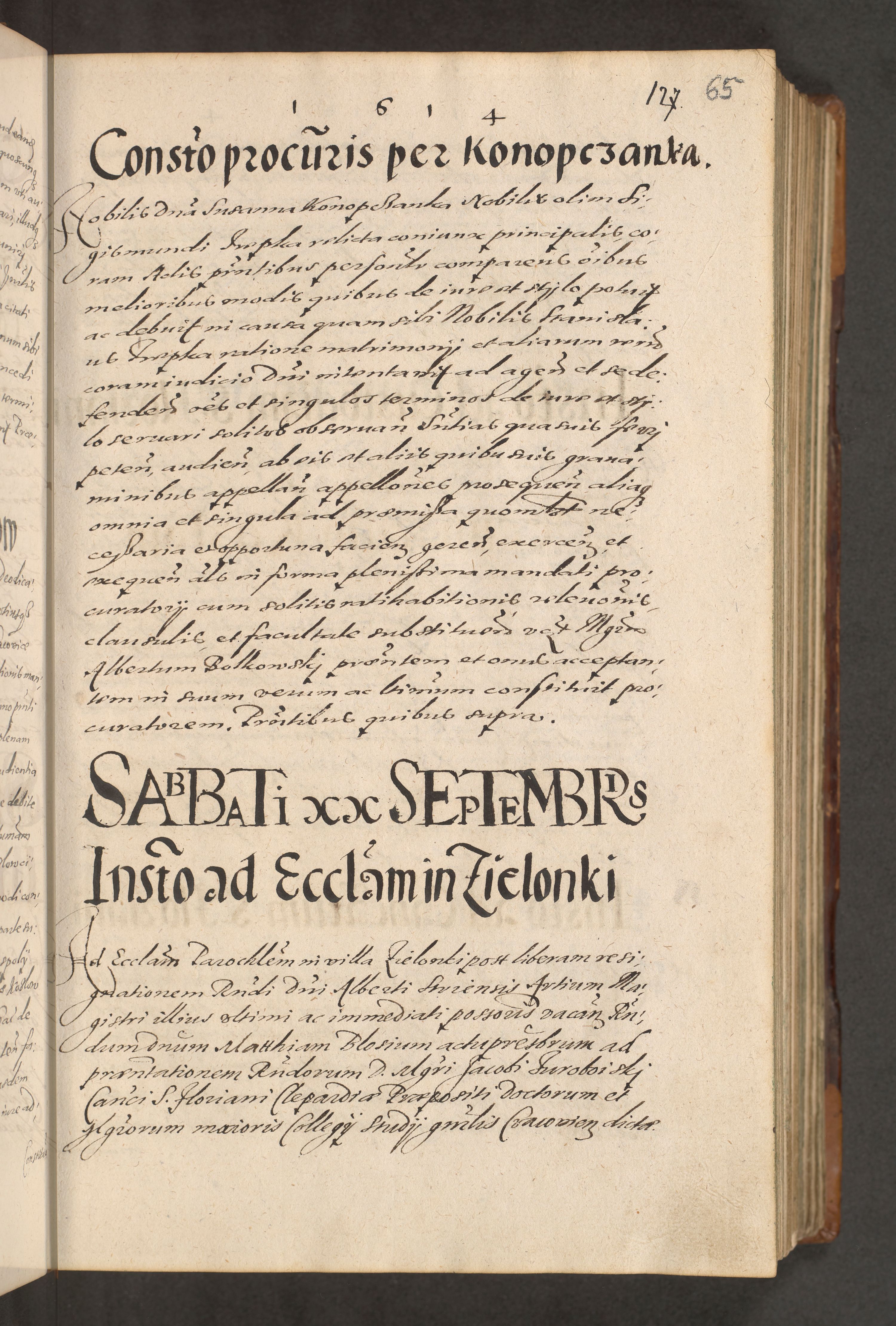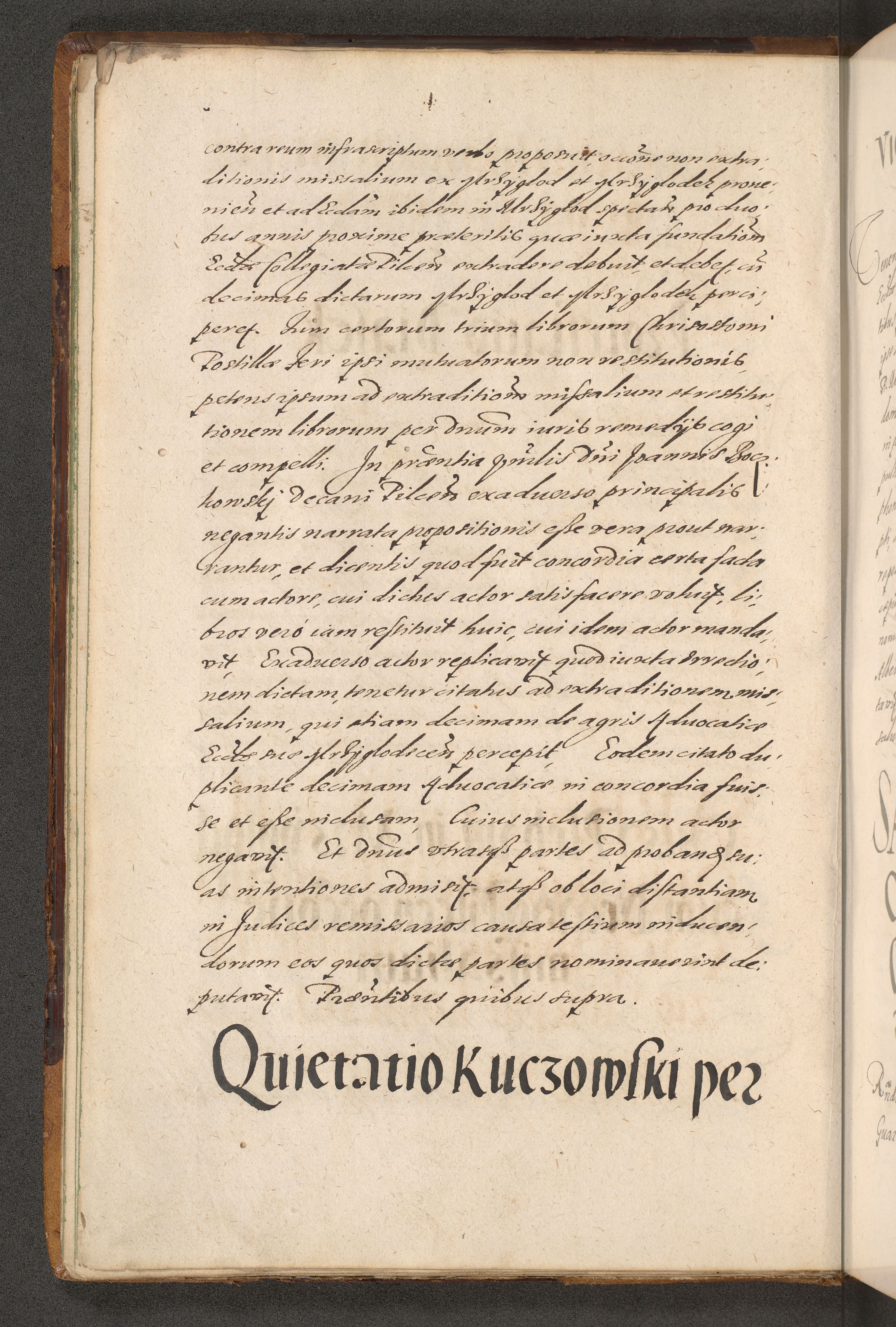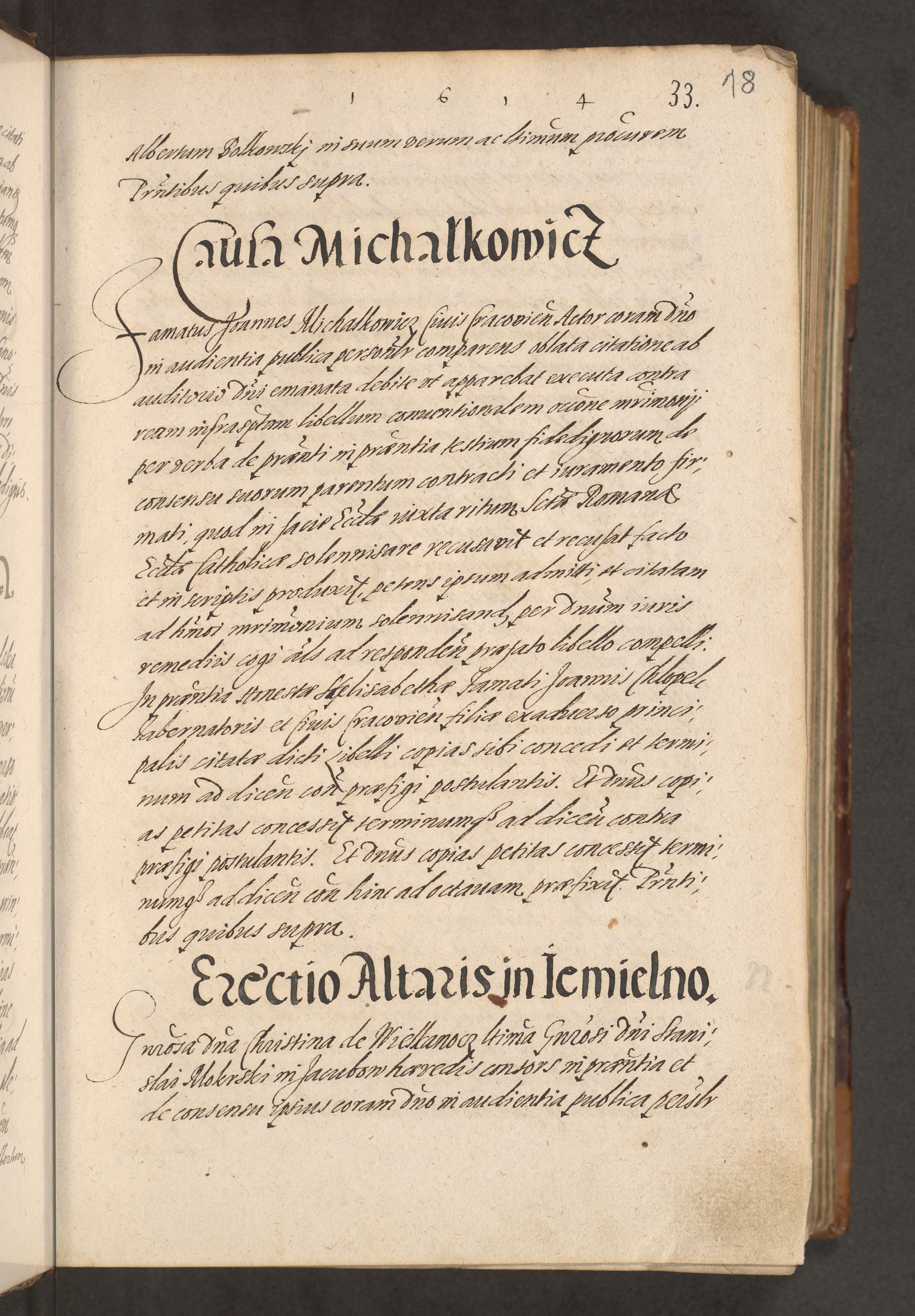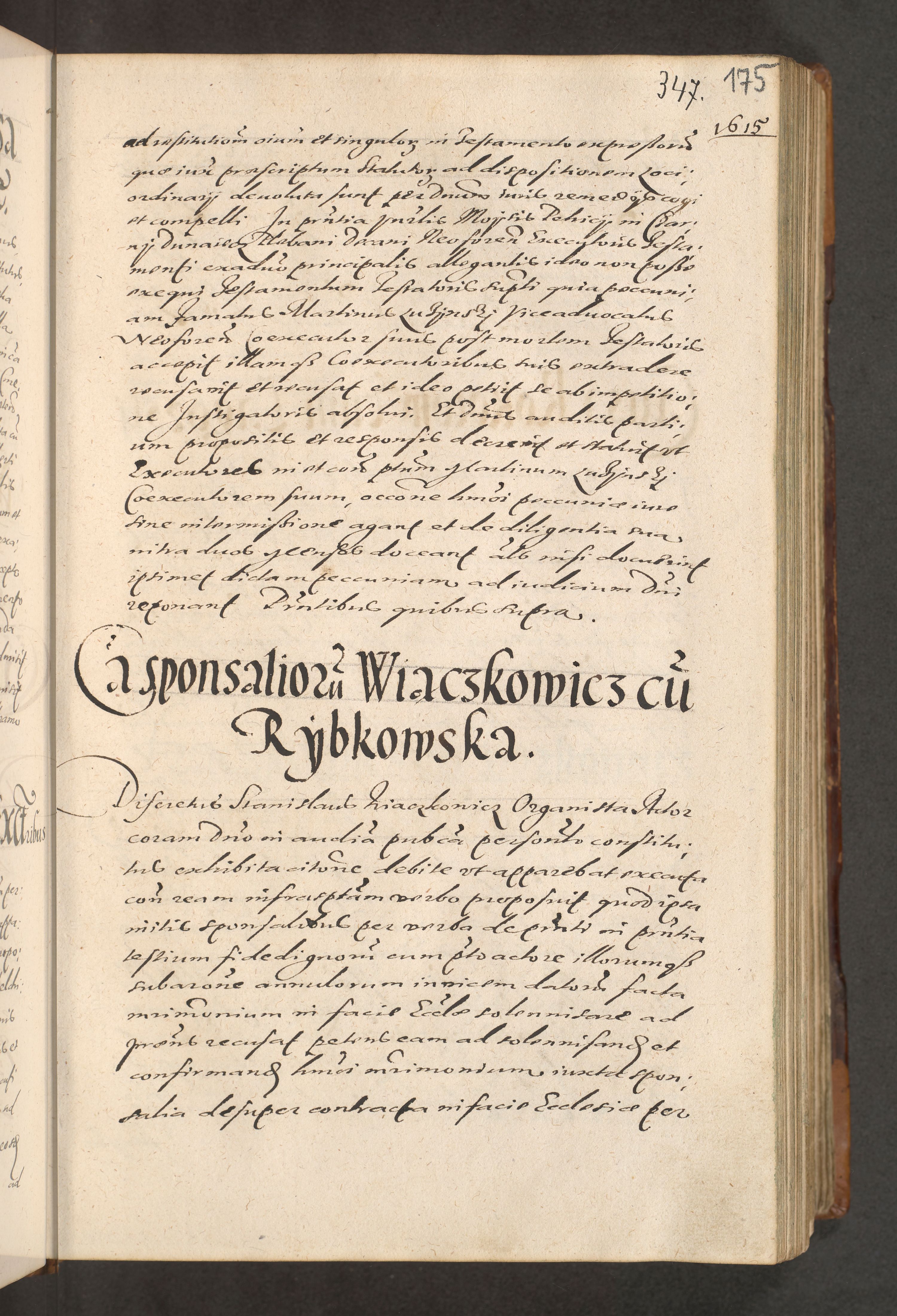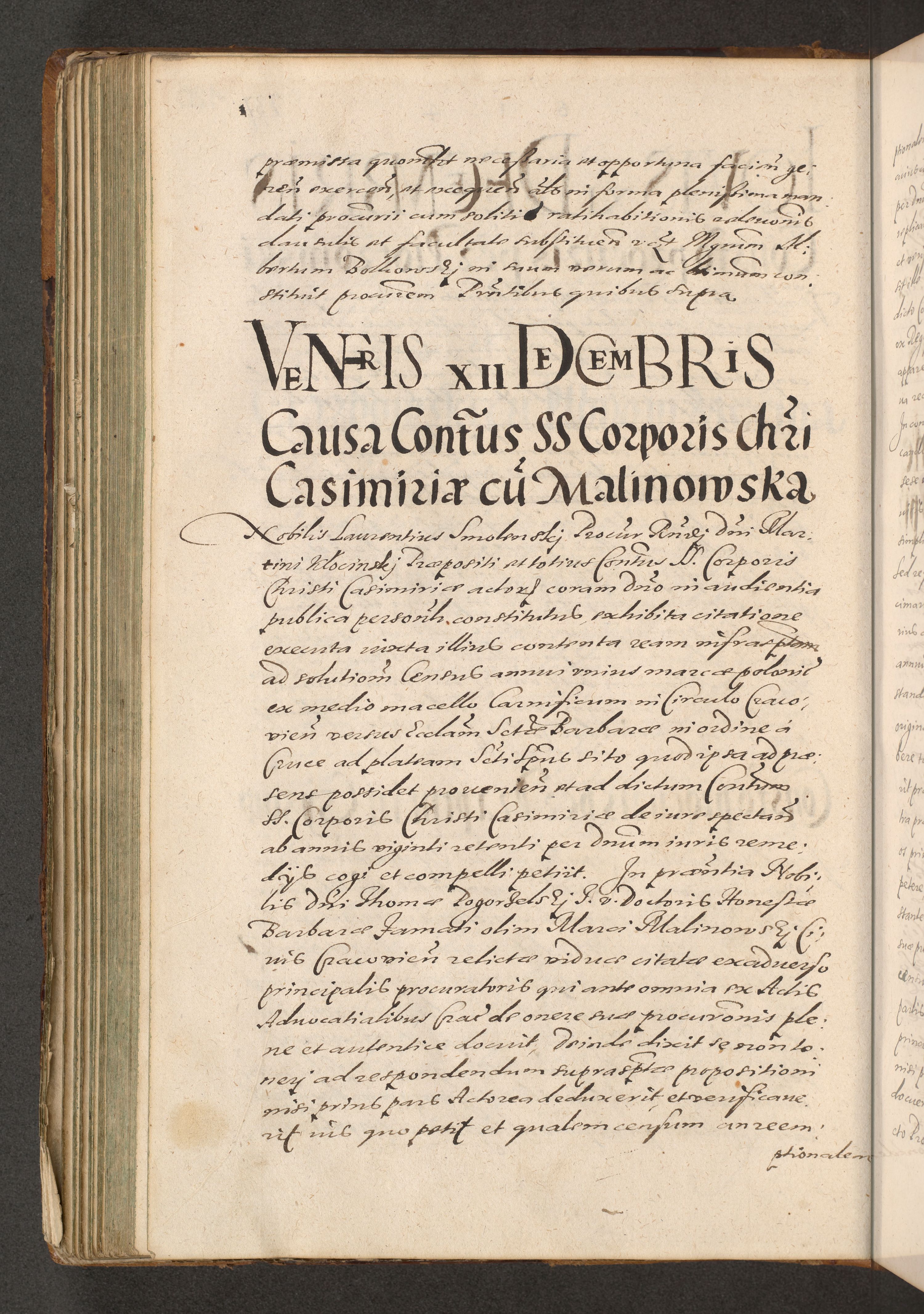 Illustrissimo et Reverendissimo in Christo Patre Domino Domino Petro Tylicki Dei et Apostolice Sedis Gratia Episcopo Cracoviensis Duce Severiensis Acta actorum causarum sententiarum tam interloquutoriarum quam definitivarum decretorum obligationum, quietationum, recognitionum, constitutionum procuratorum etc. etc. coram Admodum Reverendo Domino Thoma Oborski I. V. Doctore Canonico Vicario in Spiritualibus et Officiali generali Cracoviensis in anno Domini Millesimo Sexcentessimo Decimoquarto Cuius Indictio duodecima Pontificus SS. D. N. D. Pauli Divina providentia Papae quinti Anno decimo foeliciter incipiunt