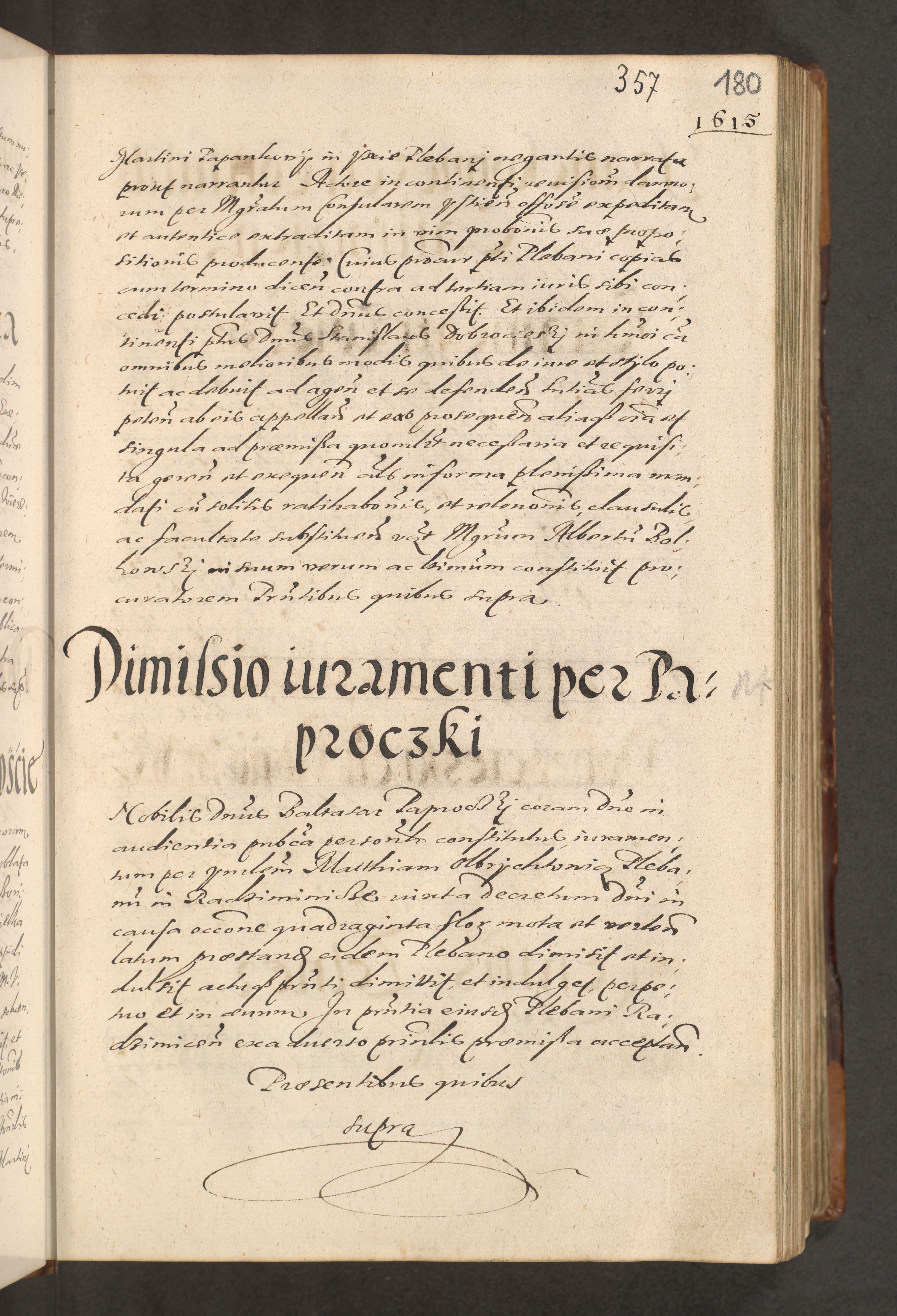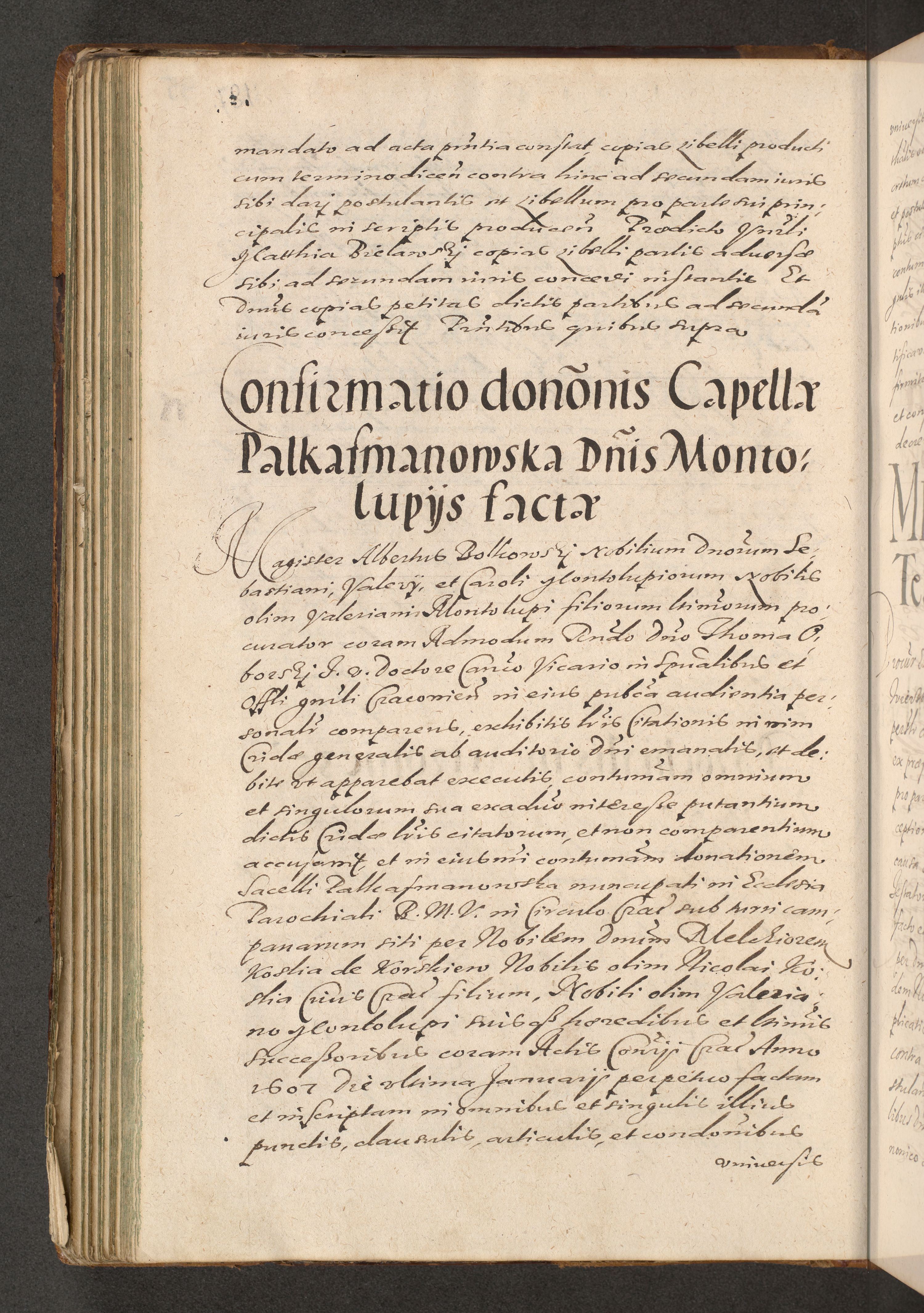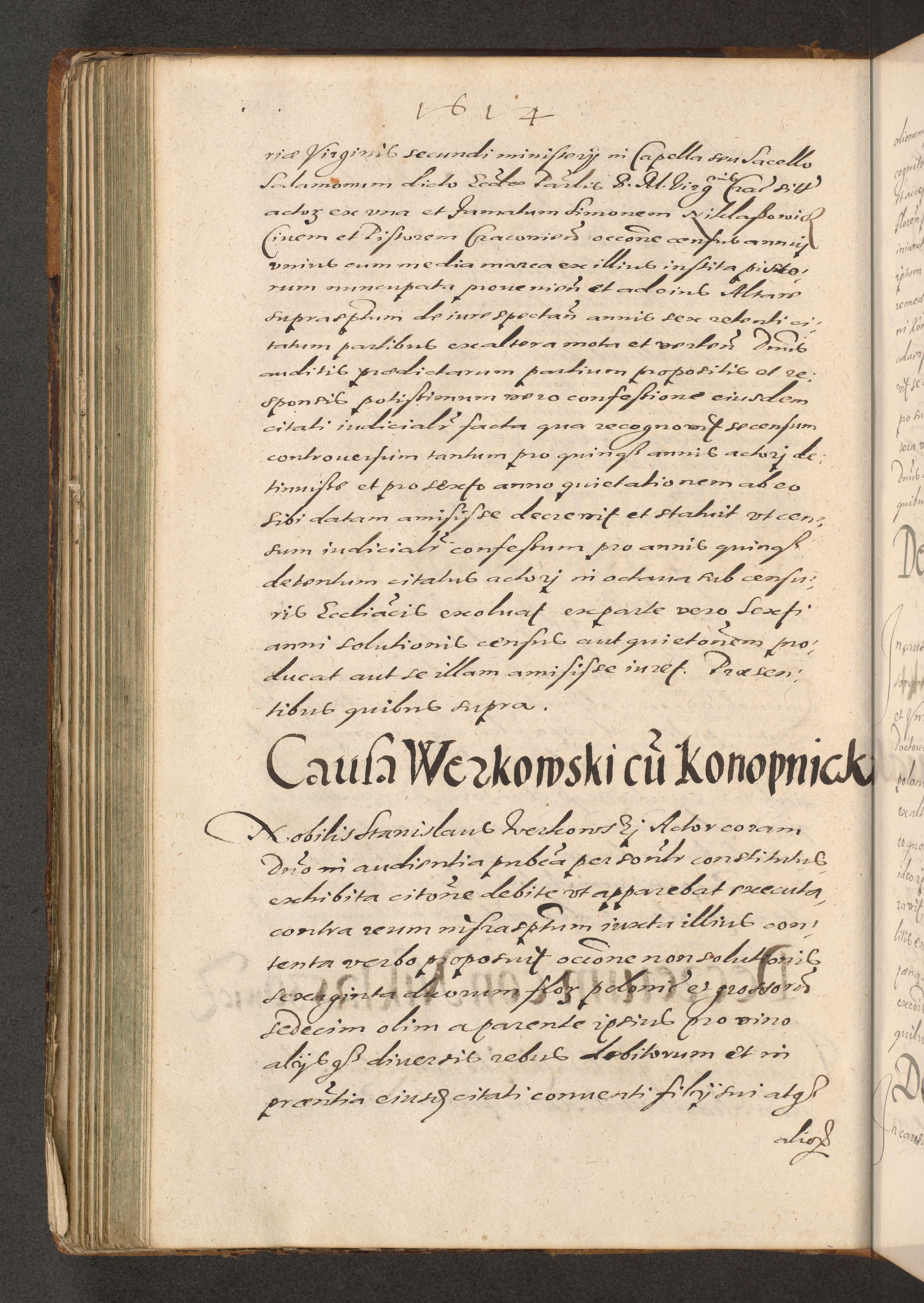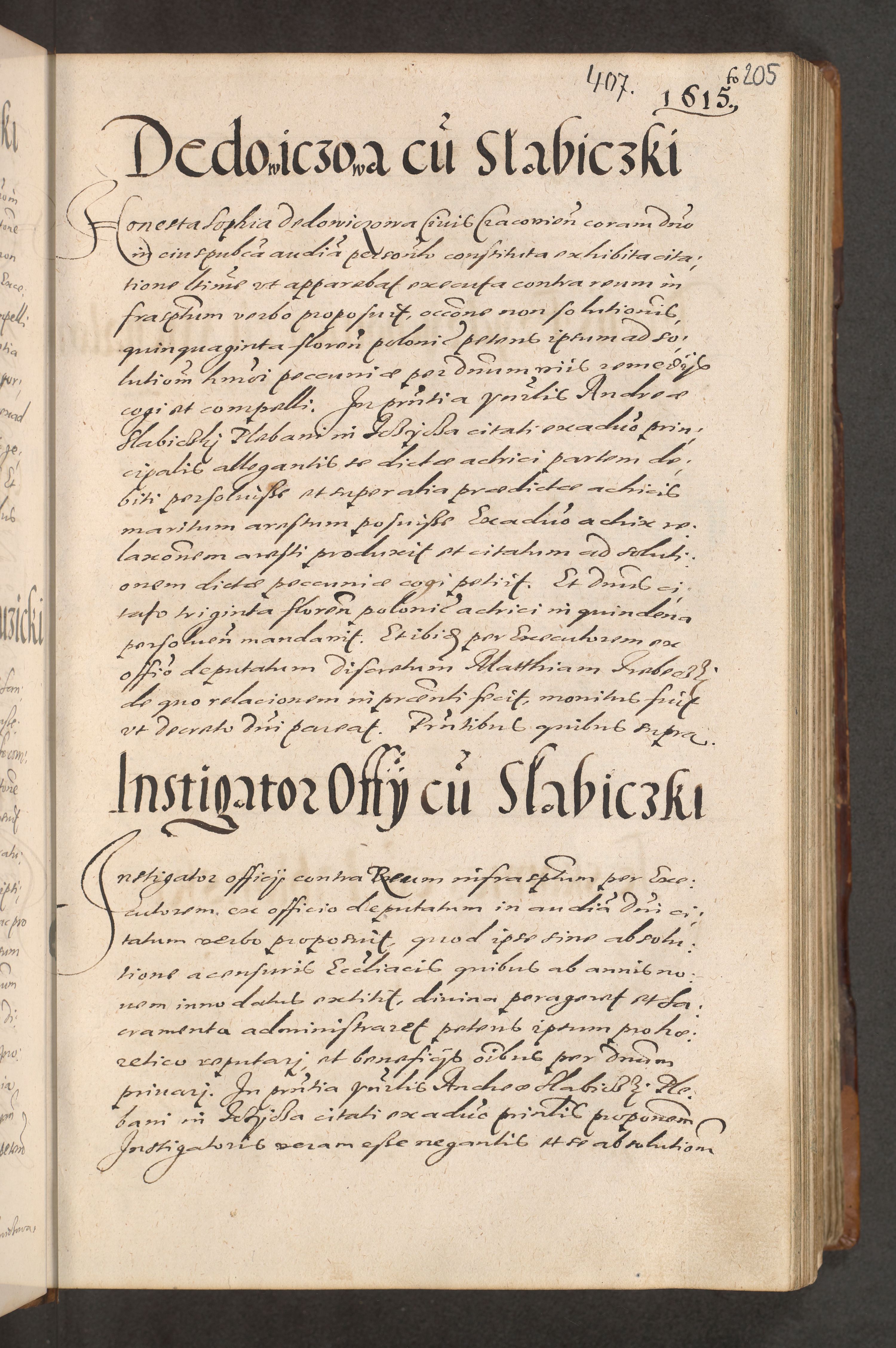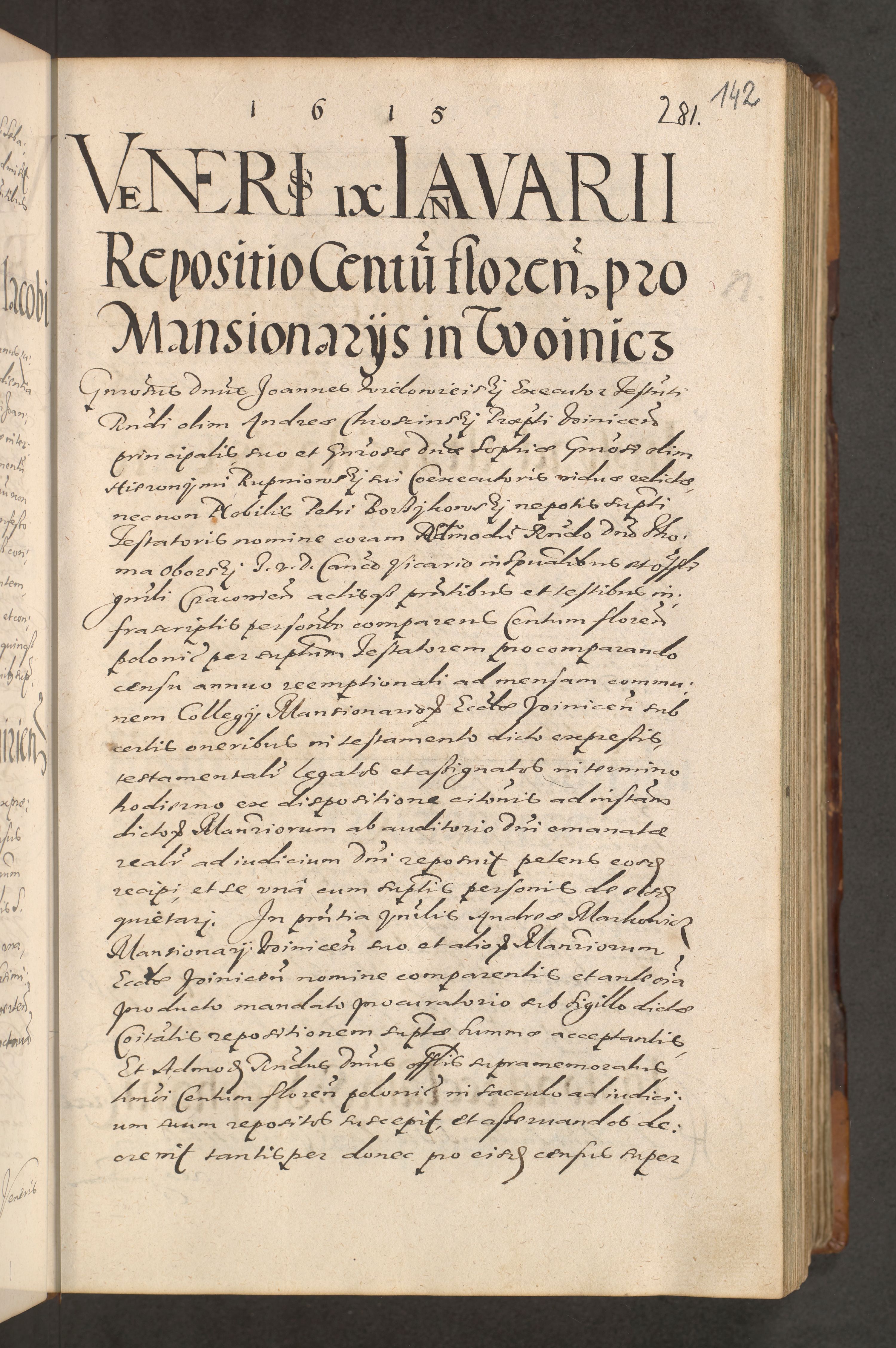 Illustrissimo et Reverendissimo in Christo Patre Domino Domino Petro Tylicki Dei et Apostolice Sedis Gratia Episcopo Cracoviensis Duce Severiensis Acta actorum causarum sententiarum tam interloquutoriarum quam definitivarum decretorum obligationum, quietationum, recognitionum, constitutionum procuratorum etc. etc. coram Admodum Reverendo Domino Thoma Oborski I. V. Doctore Canonico Vicario in Spiritualibus et Officiali generali Cracoviensis in anno Domini Millesimo Sexcentessimo Decimoquarto Cuius Indictio duodecima Pontificus SS. D. N. D. Pauli Divina providentia Papae quinti Anno decimo foeliciter incipiunt