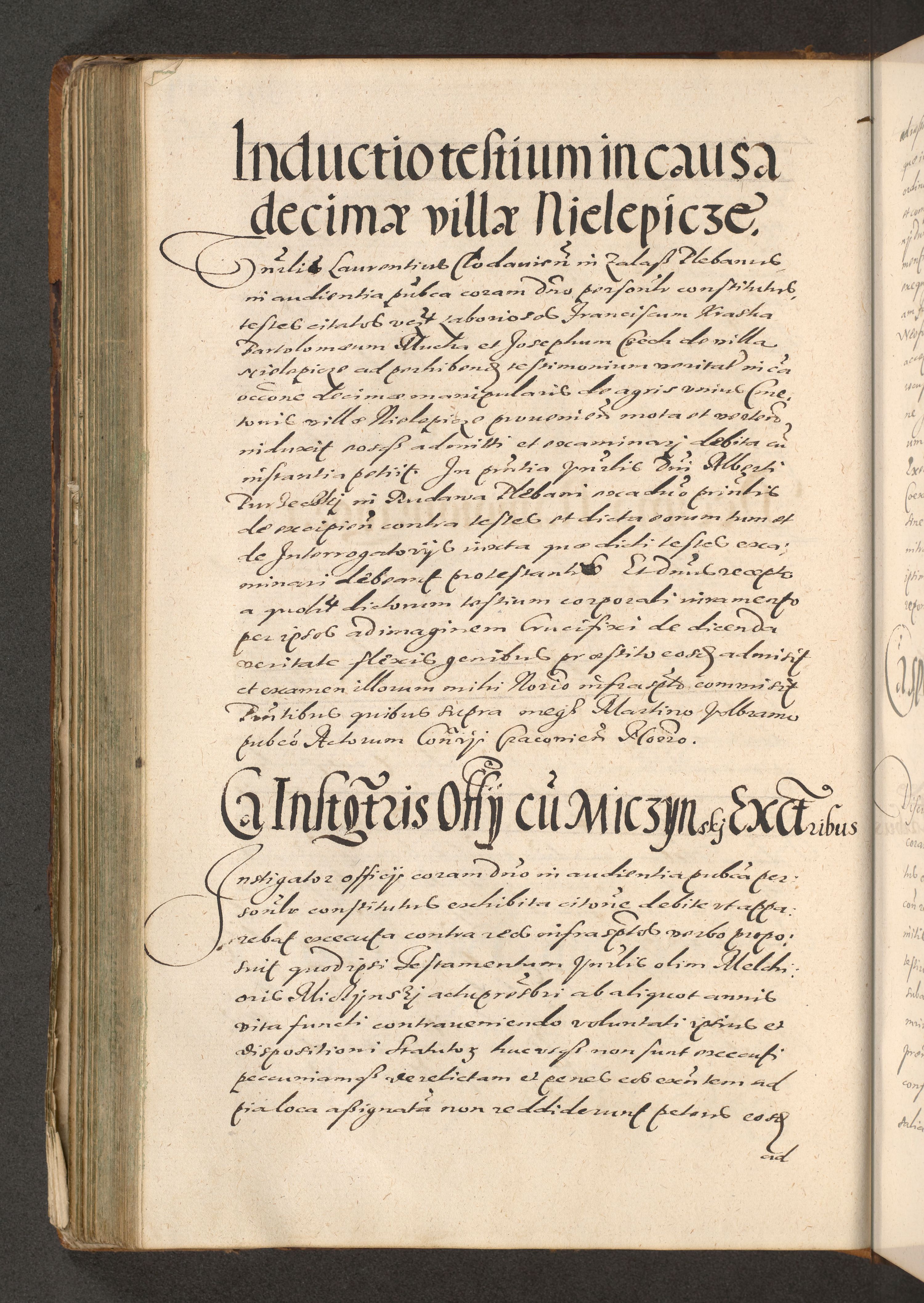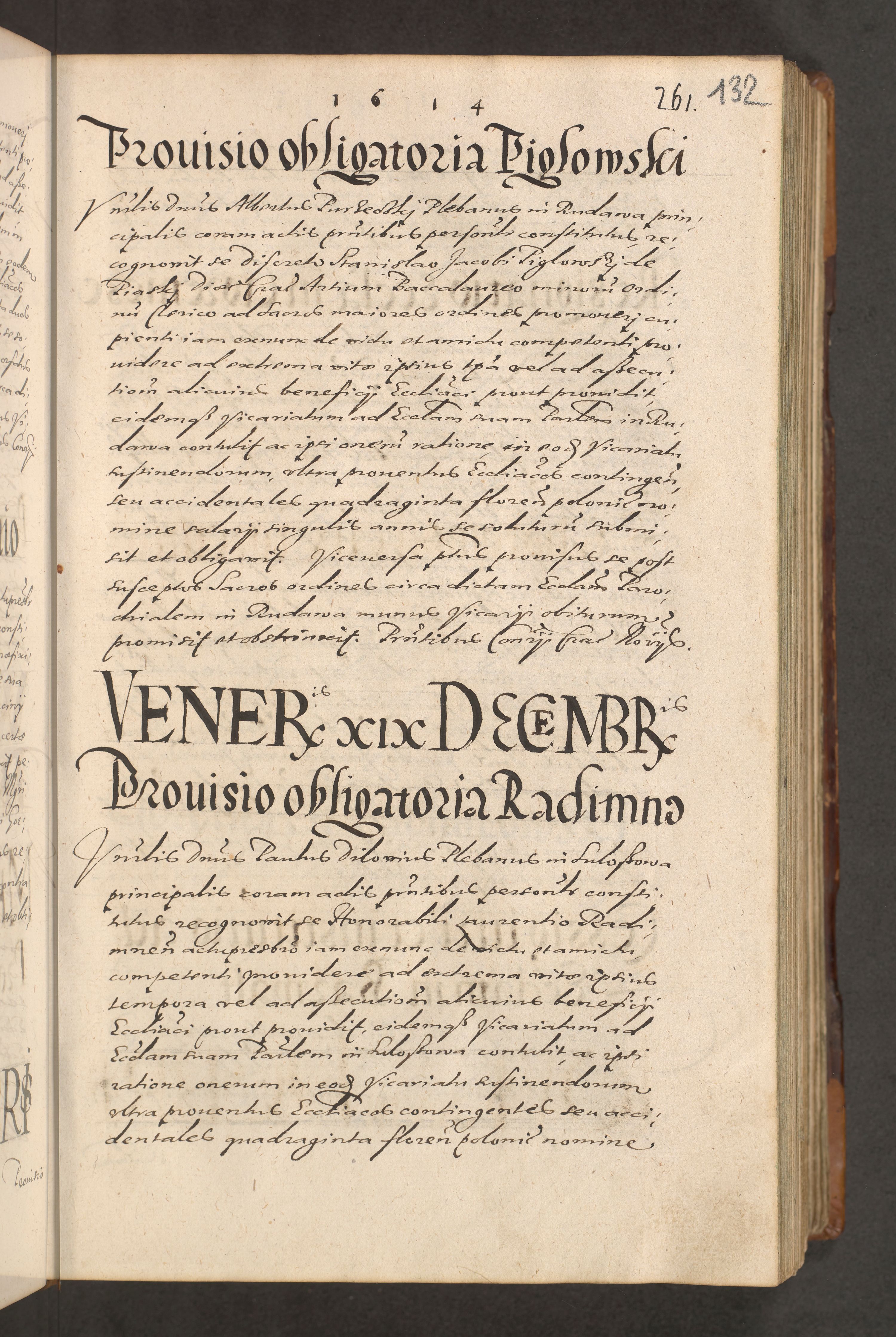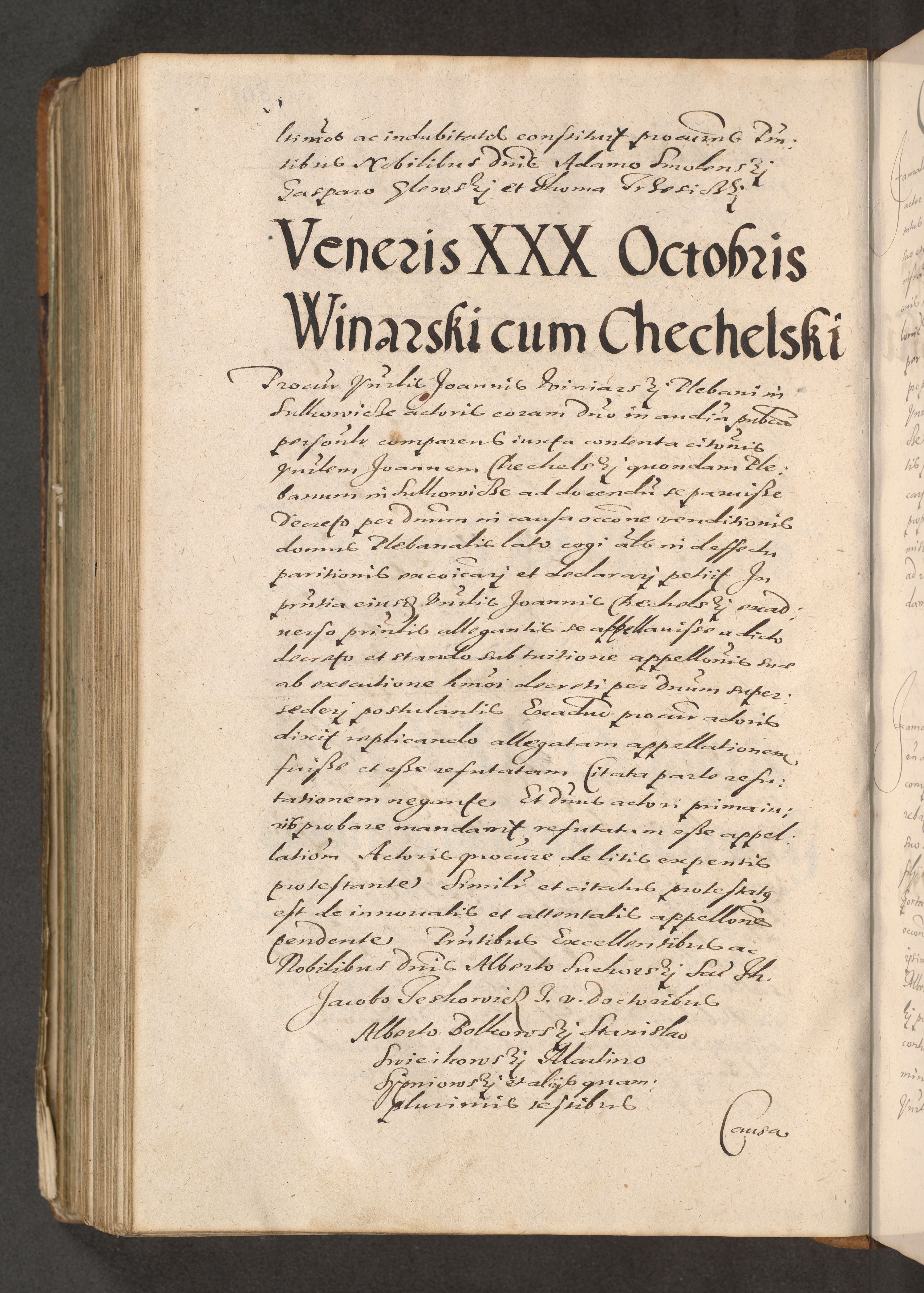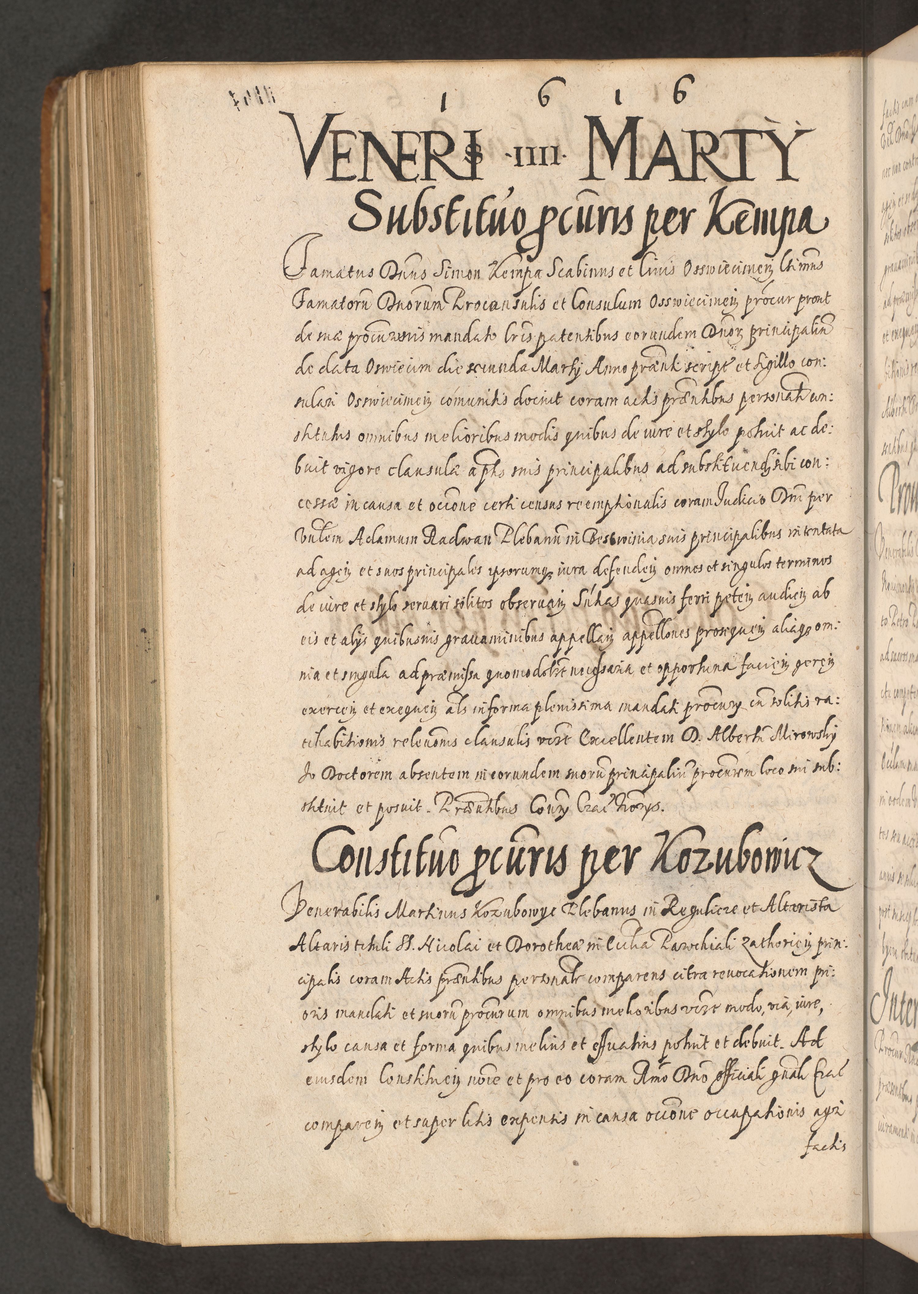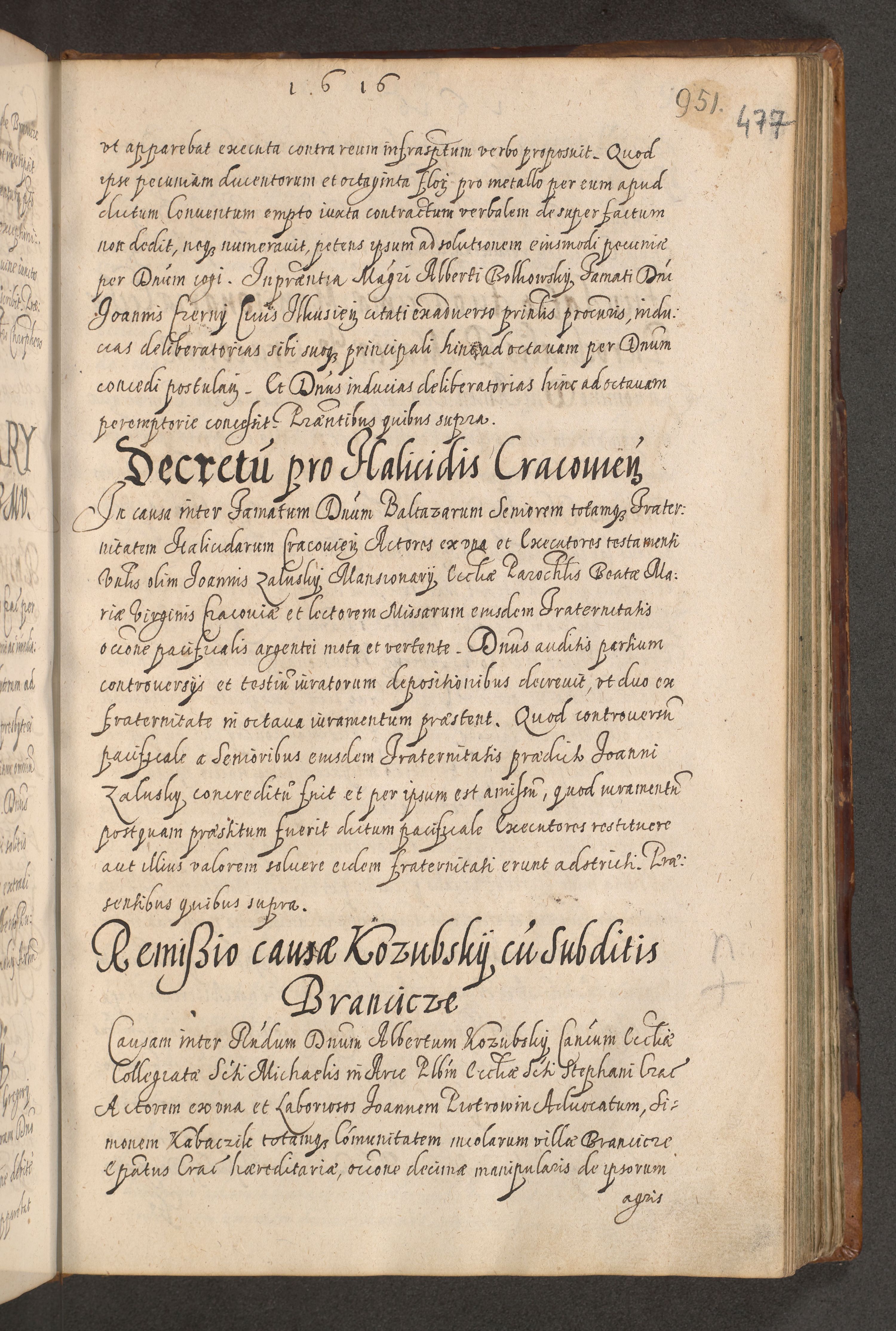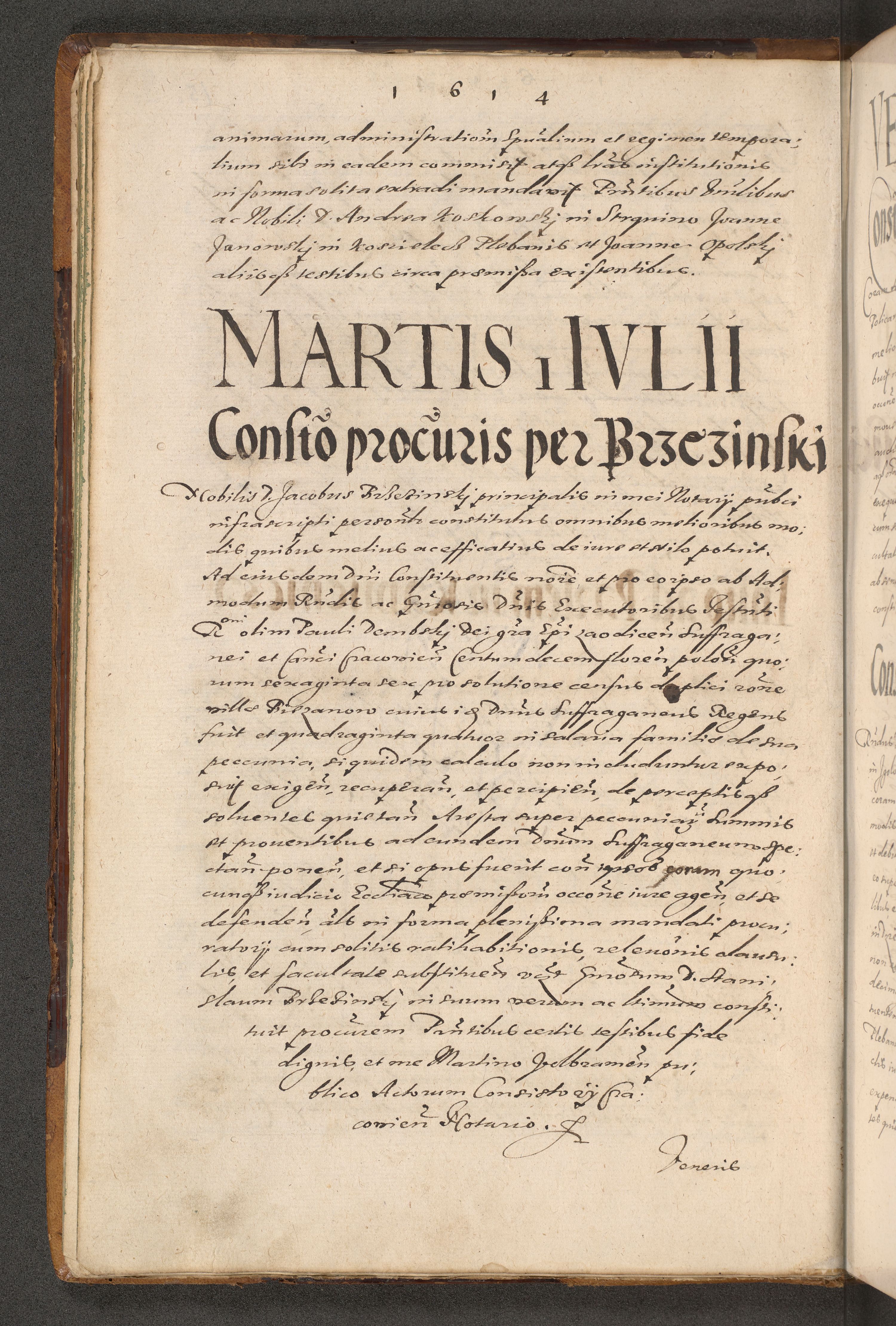 Illustrissimo et Reverendissimo in Christo Patre Domino Domino Petro Tylicki Dei et Apostolice Sedis Gratia Episcopo Cracoviensis Duce Severiensis Acta actorum causarum sententiarum tam interloquutoriarum quam definitivarum decretorum obligationum, quietationum, recognitionum, constitutionum procuratorum etc. etc. coram Admodum Reverendo Domino Thoma Oborski I. V. Doctore Canonico Vicario in Spiritualibus et Officiali generali Cracoviensis in anno Domini Millesimo Sexcentessimo Decimoquarto Cuius Indictio duodecima Pontificus SS. D. N. D. Pauli Divina providentia Papae quinti Anno decimo foeliciter incipiunt