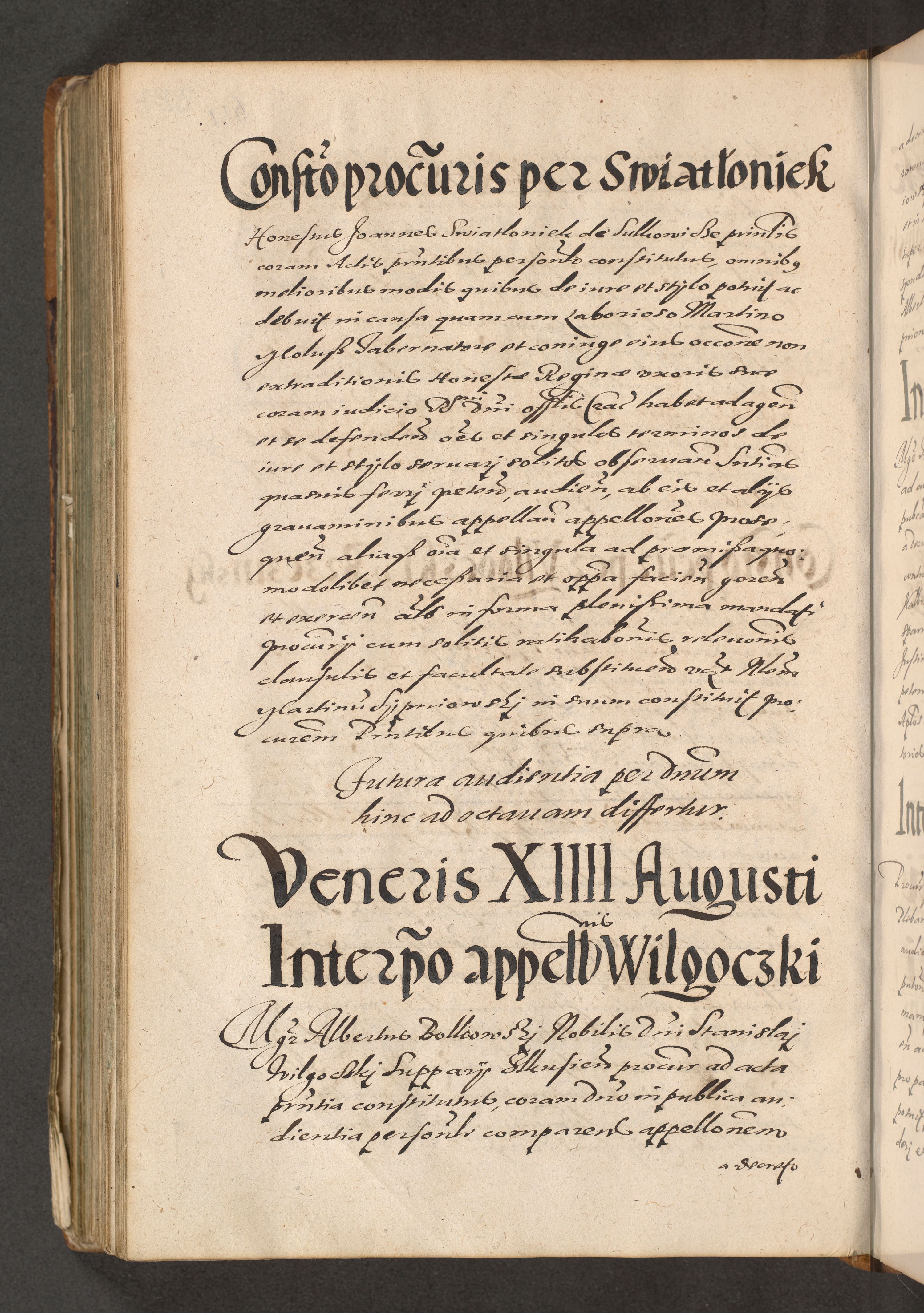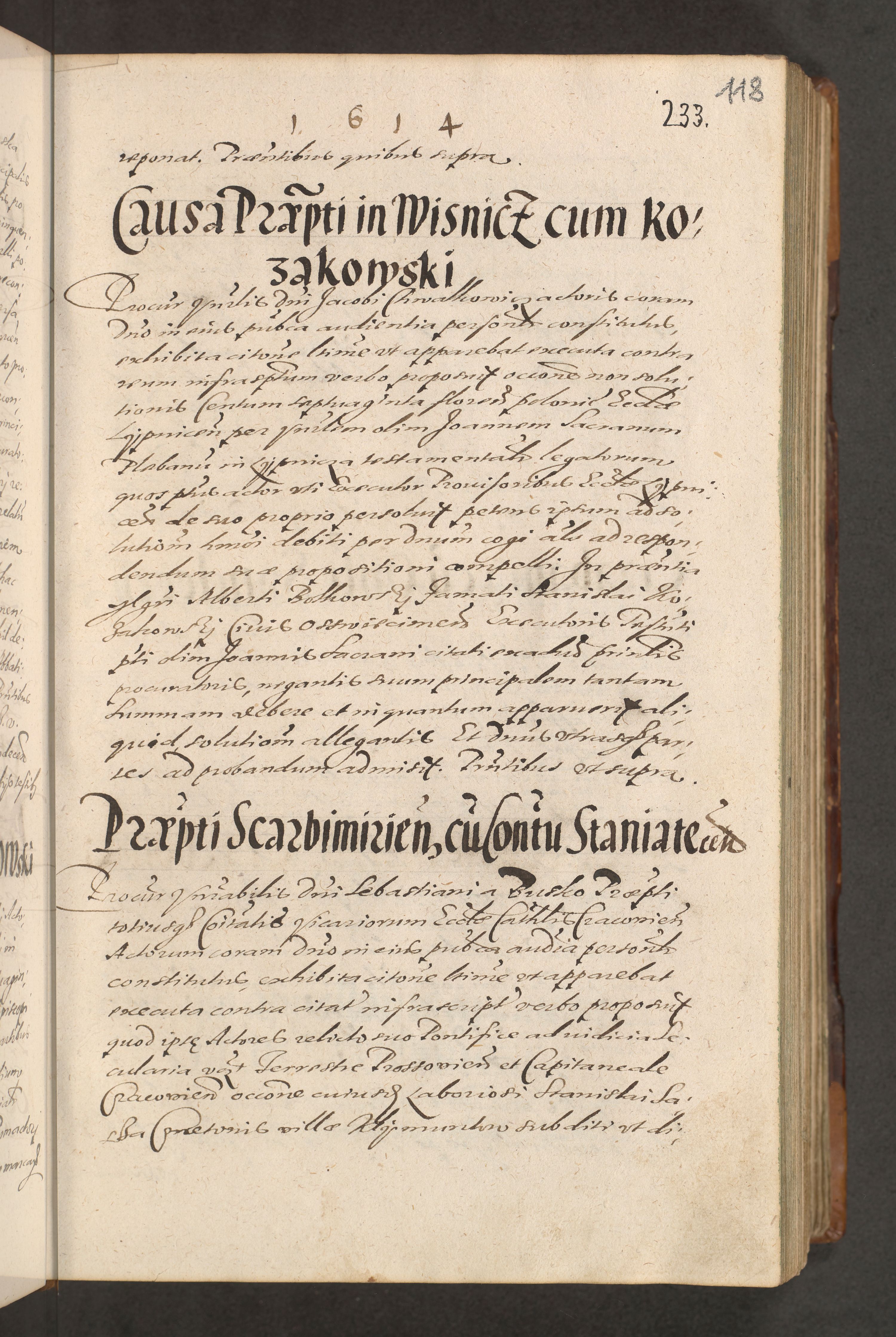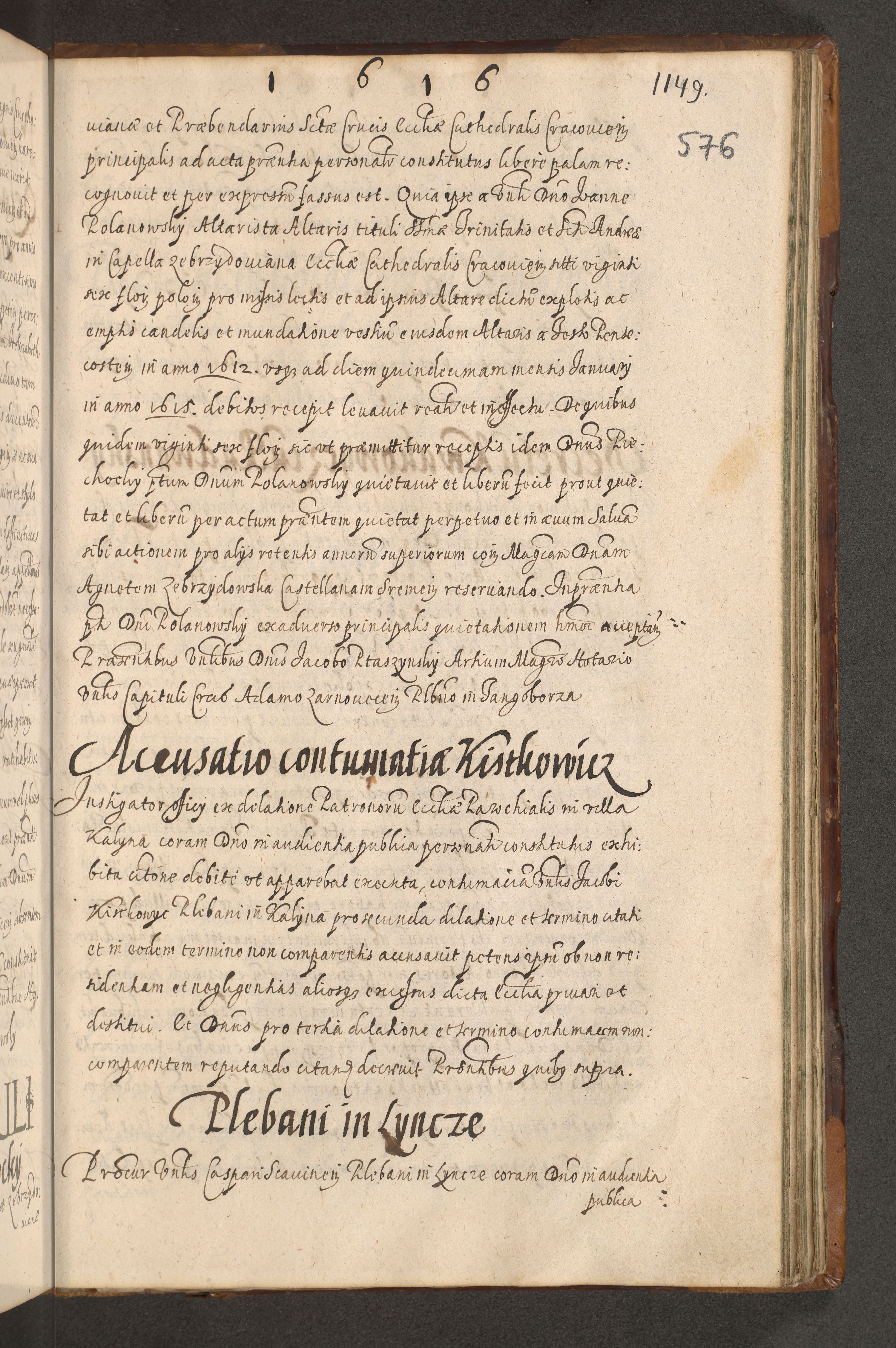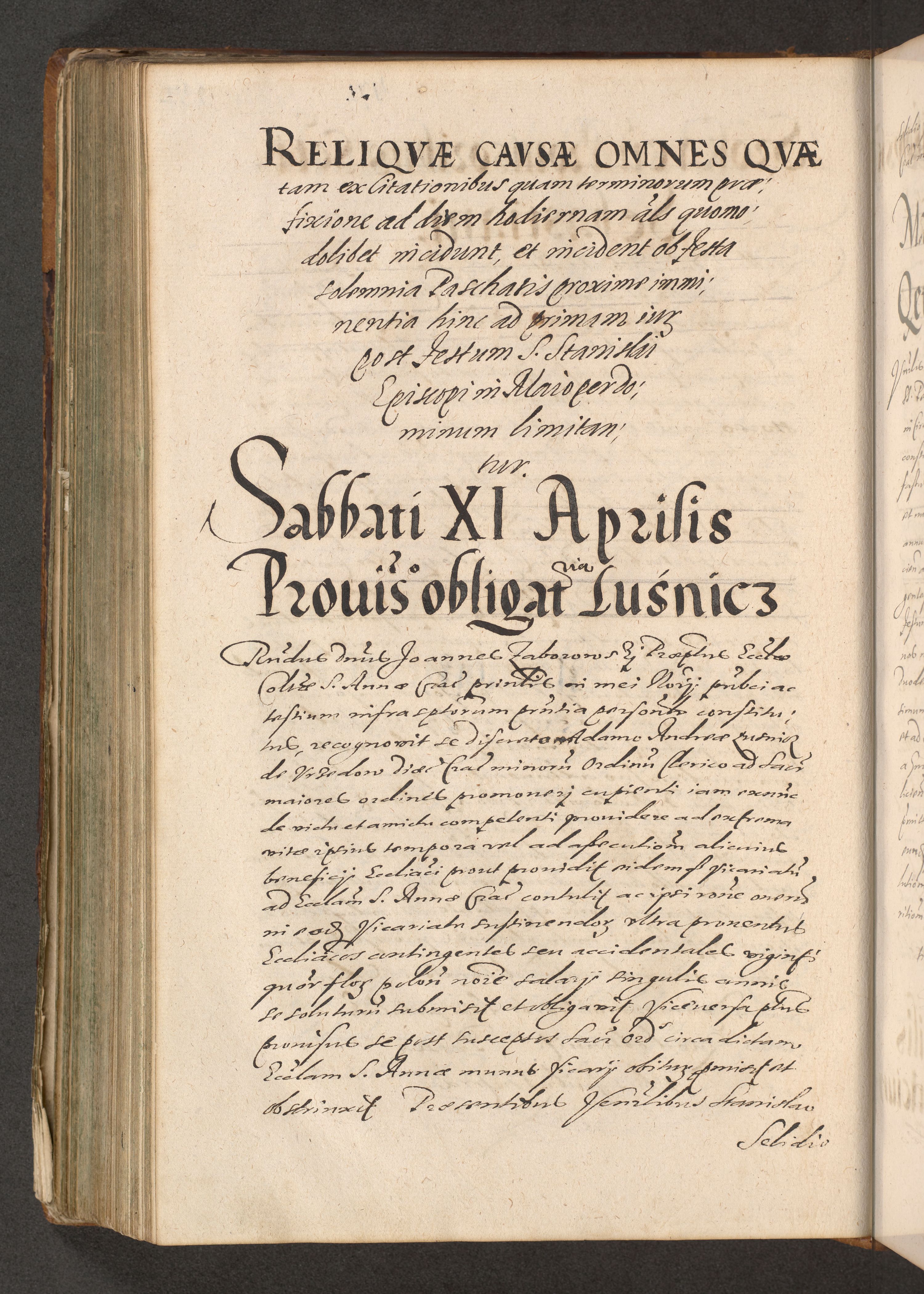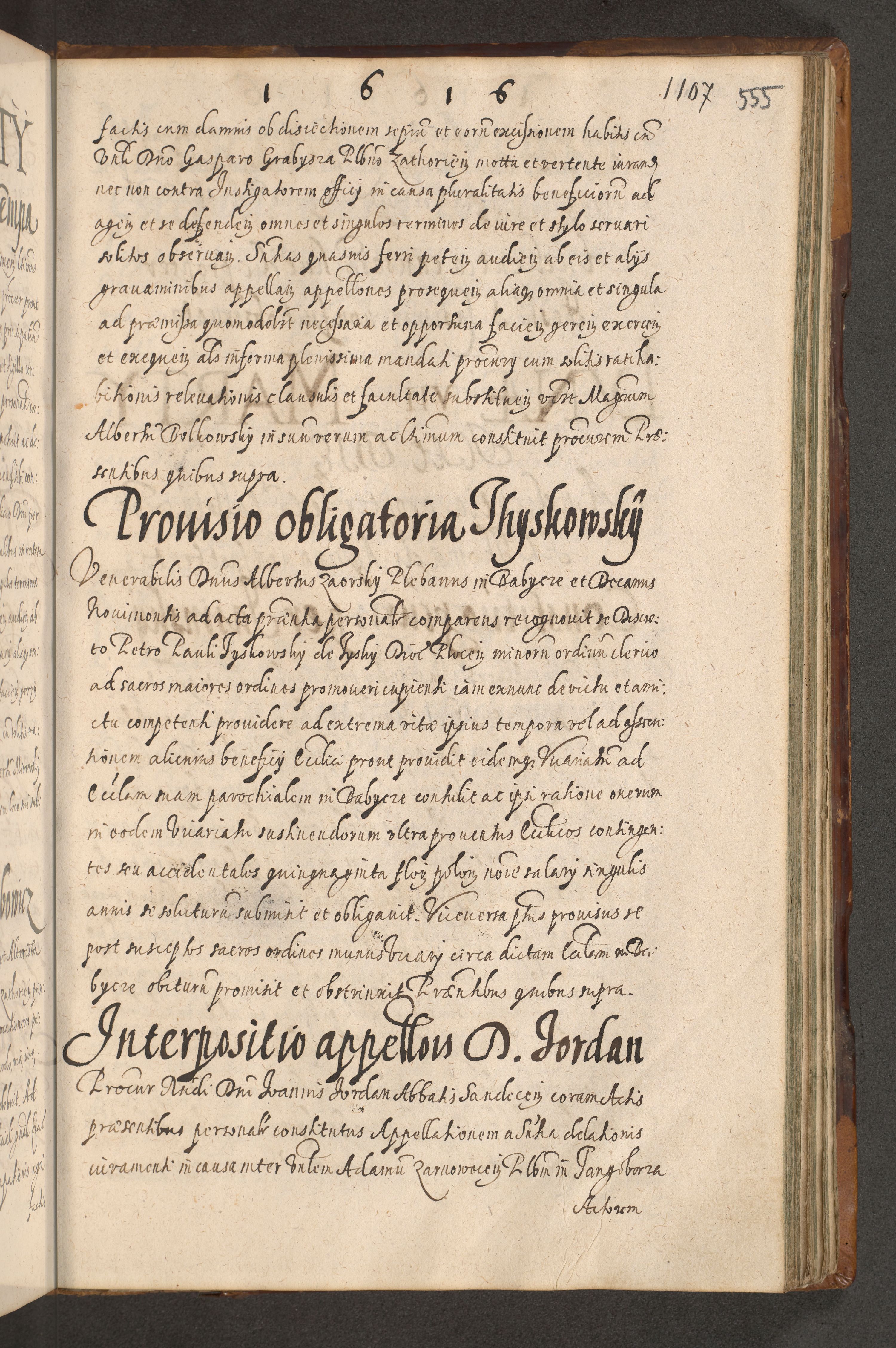 Illustrissimo et Reverendissimo in Christo Patre Domino Domino Petro Tylicki Dei et Apostolice Sedis Gratia Episcopo Cracoviensis Duce Severiensis Acta actorum causarum sententiarum tam interloquutoriarum quam definitivarum decretorum obligationum, quietationum, recognitionum, constitutionum procuratorum etc. etc. coram Admodum Reverendo Domino Thoma Oborski I. V. Doctore Canonico Vicario in Spiritualibus et Officiali generali Cracoviensis in anno Domini Millesimo Sexcentessimo Decimoquarto Cuius Indictio duodecima Pontificus SS. D. N. D. Pauli Divina providentia Papae quinti Anno decimo foeliciter incipiunt