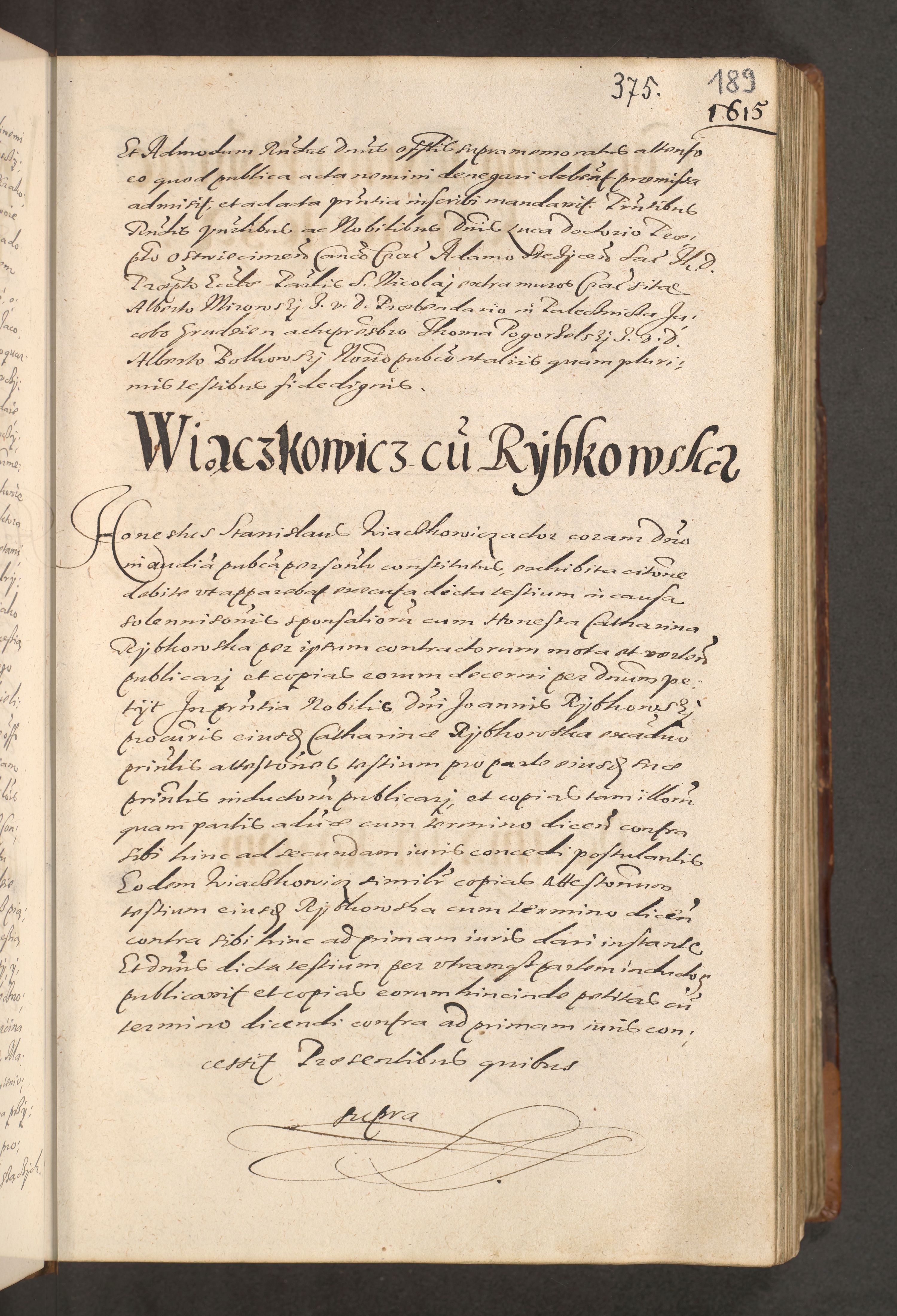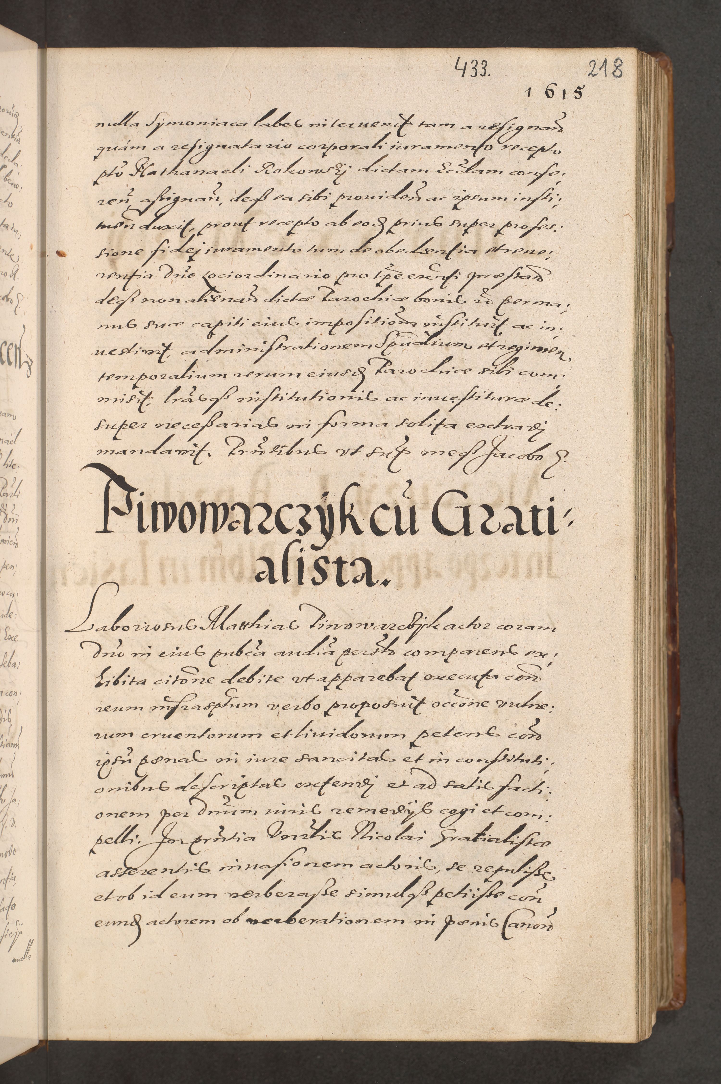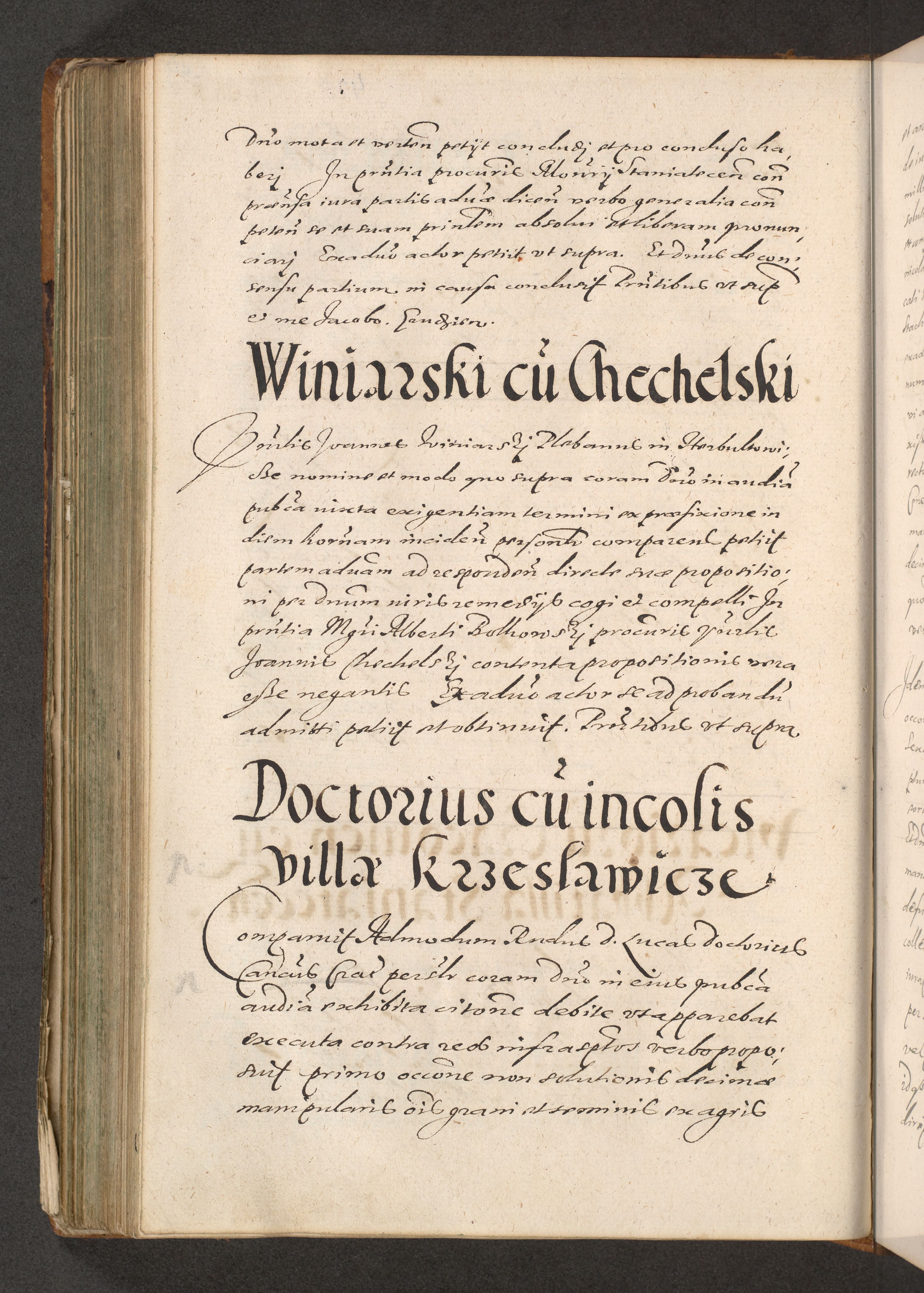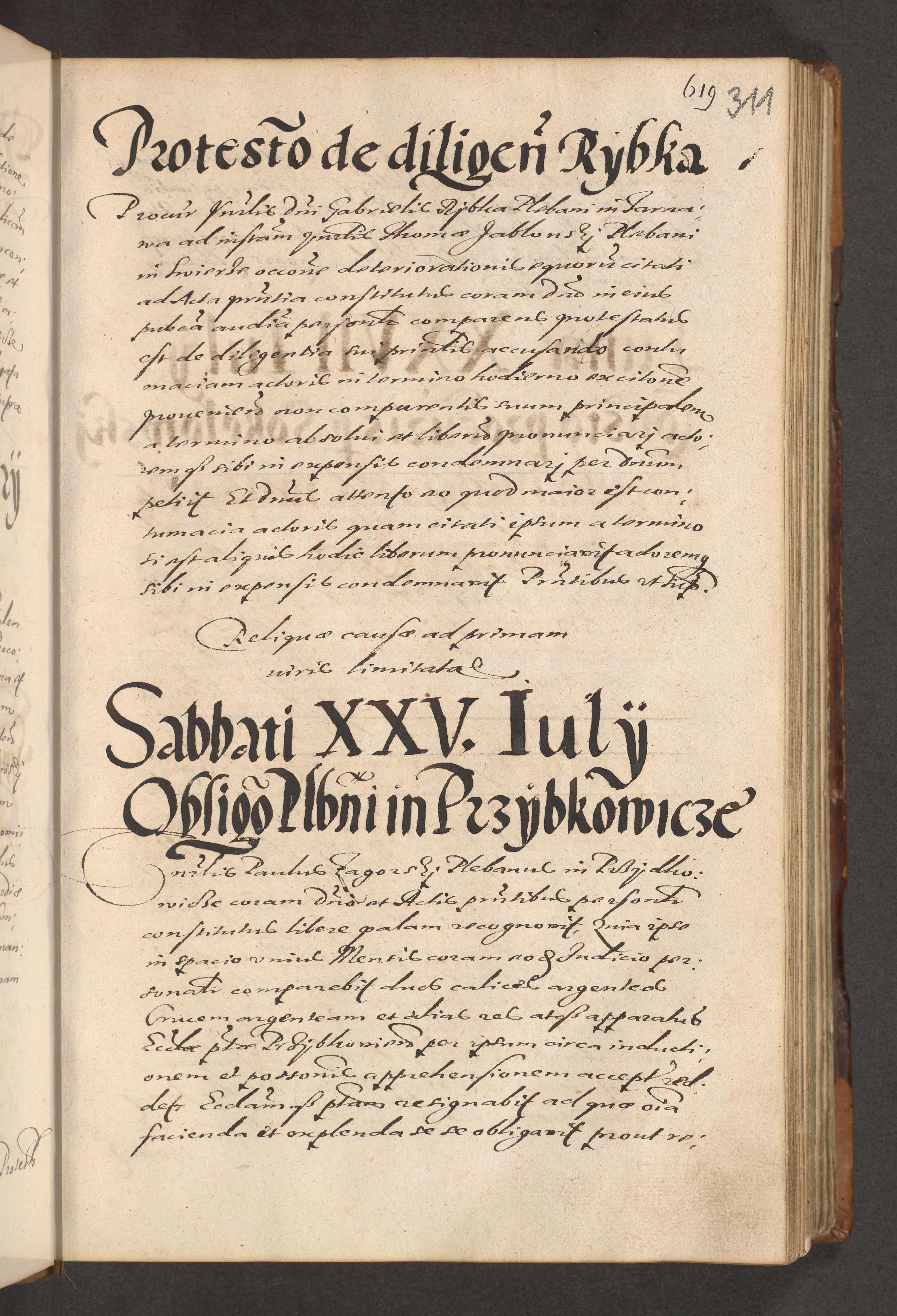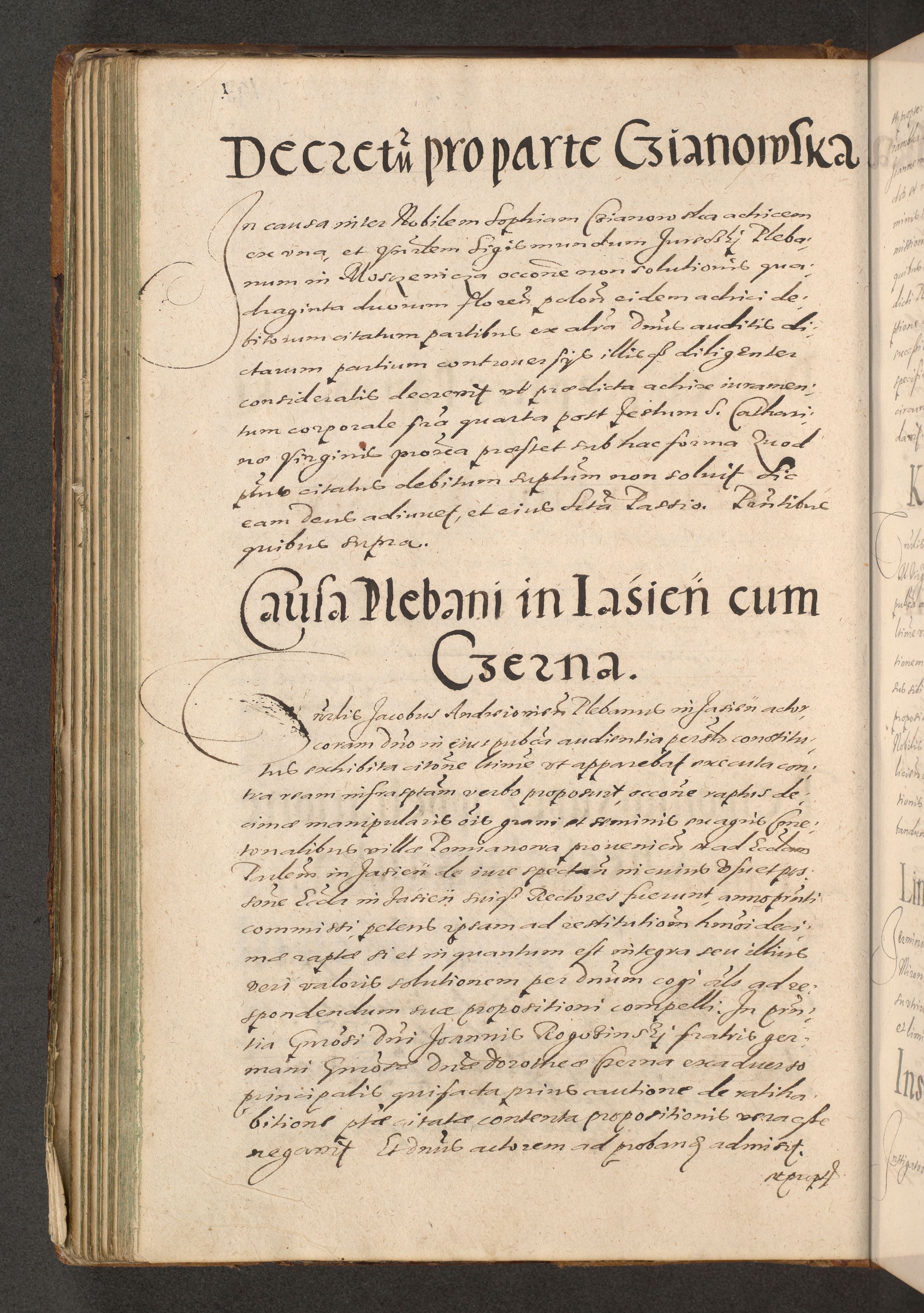 Illustrissimo et Reverendissimo in Christo Patre Domino Domino Petro Tylicki Dei et Apostolice Sedis Gratia Episcopo Cracoviensis Duce Severiensis Acta actorum causarum sententiarum tam interloquutoriarum quam definitivarum decretorum obligationum, quietationum, recognitionum, constitutionum procuratorum etc. etc. coram Admodum Reverendo Domino Thoma Oborski I. V. Doctore Canonico Vicario in Spiritualibus et Officiali generali Cracoviensis in anno Domini Millesimo Sexcentessimo Decimoquarto Cuius Indictio duodecima Pontificus SS. D. N. D. Pauli Divina providentia Papae quinti Anno decimo foeliciter incipiunt