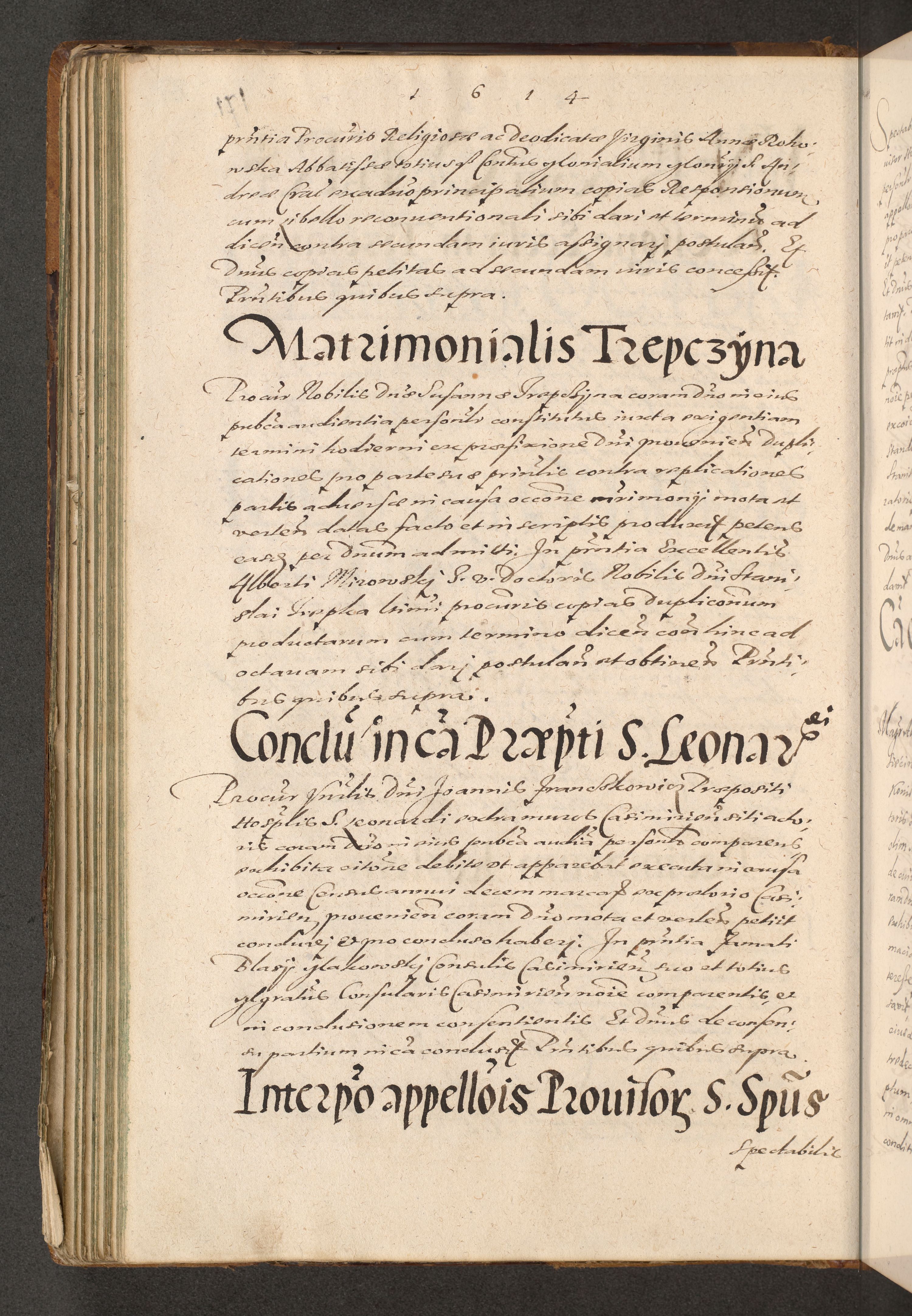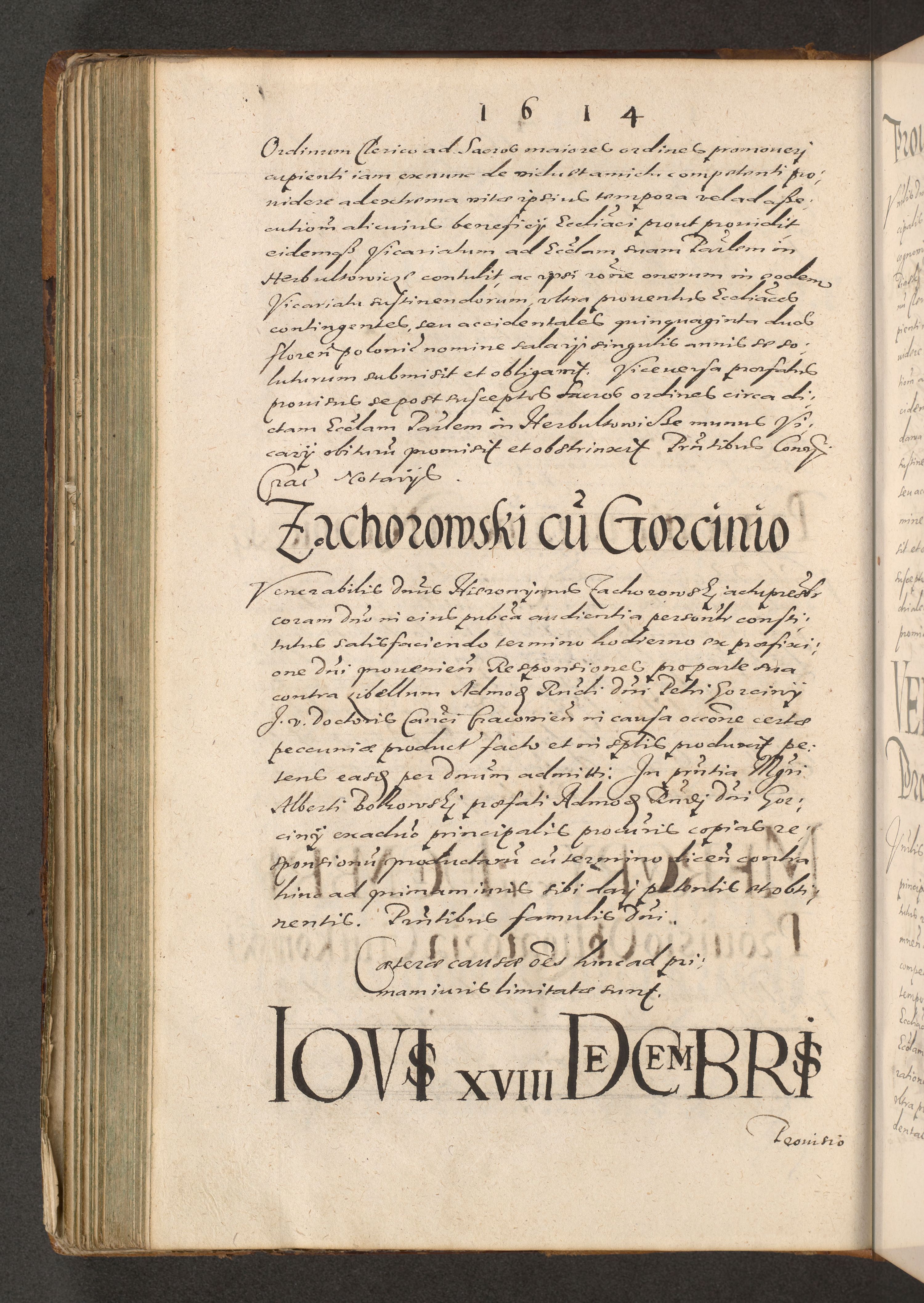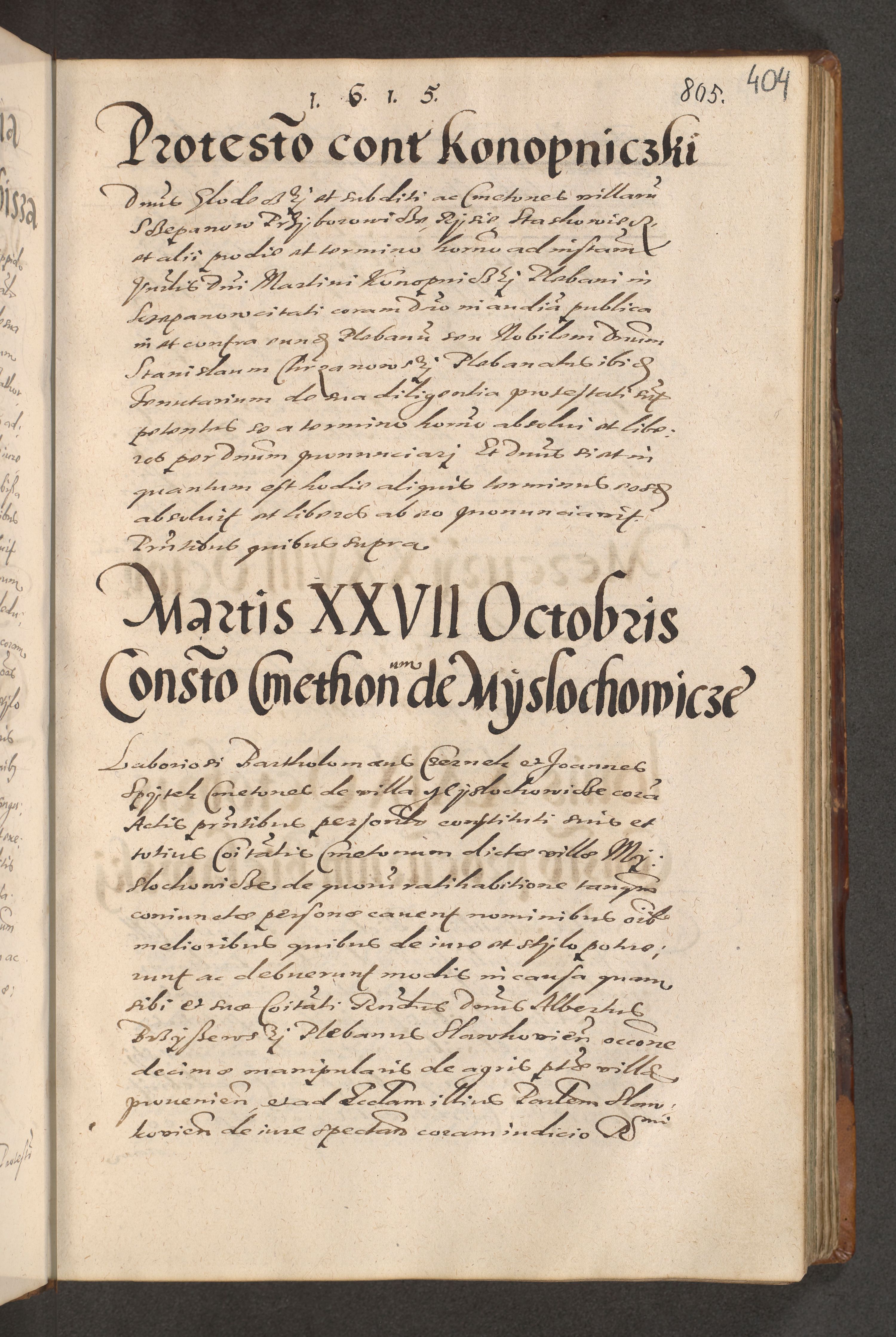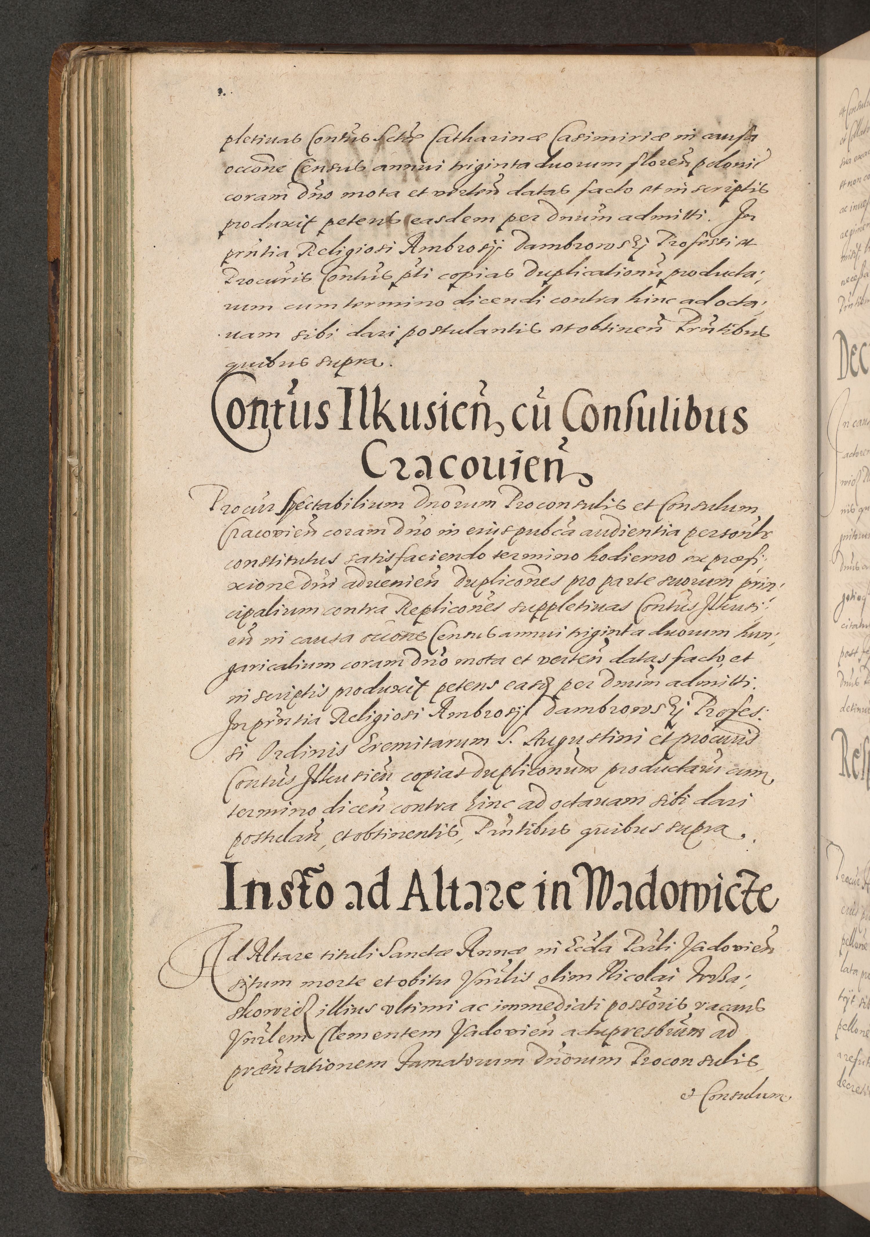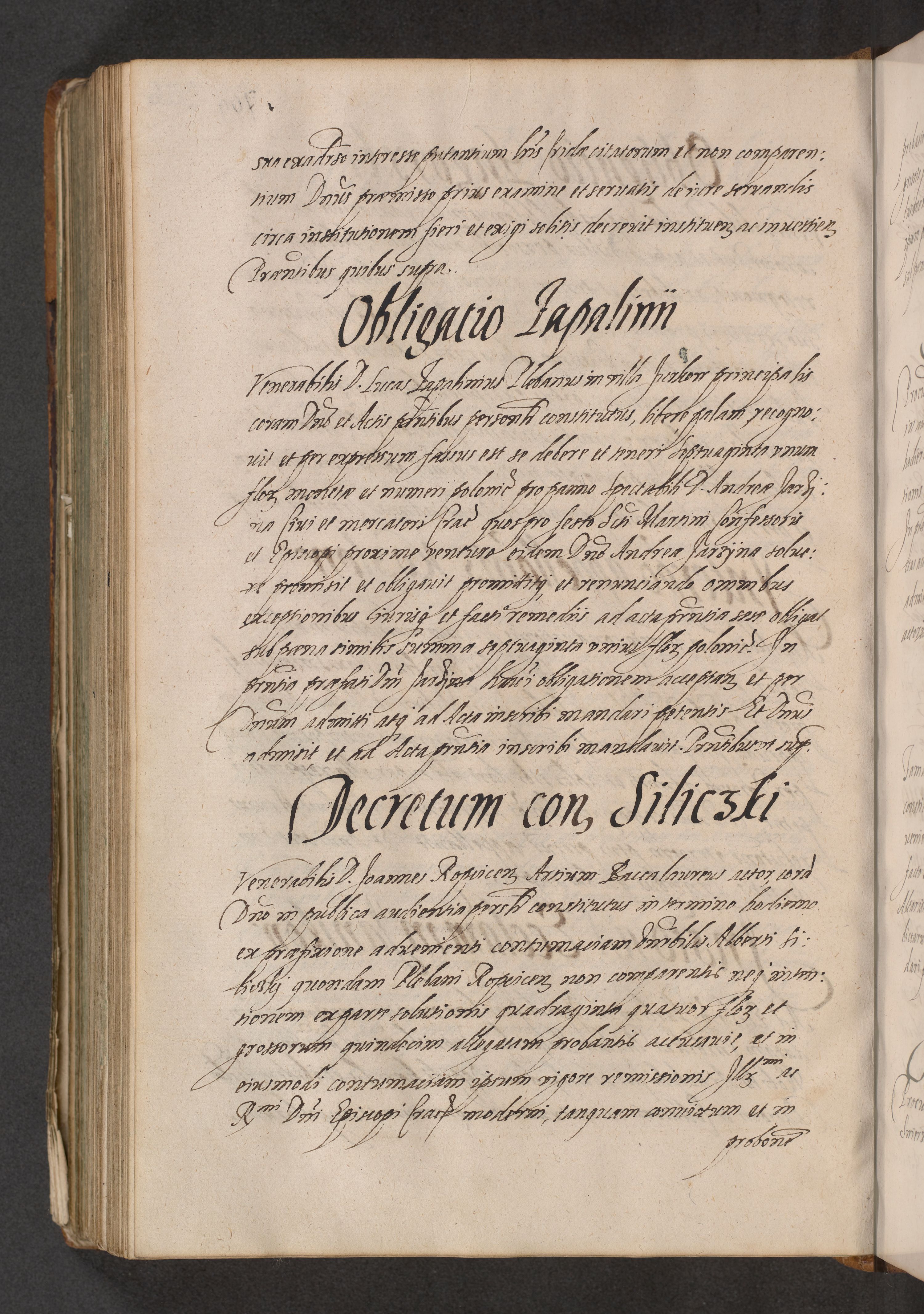 Illustrissimo et Reverendissimo in Christo Patre Domino Domino Petro Tylicki Dei et Apostolice Sedis Gratia Episcopo Cracoviensis Duce Severiensis Acta actorum causarum sententiarum tam interloquutoriarum quam definitivarum decretorum obligationum, quietationum, recognitionum, constitutionum procuratorum etc. etc. coram Admodum Reverendo Domino Thoma Oborski I. V. Doctore Canonico Vicario in Spiritualibus et Officiali generali Cracoviensis in anno Domini Millesimo Sexcentessimo Decimoquarto Cuius Indictio duodecima Pontificus SS. D. N. D. Pauli Divina providentia Papae quinti Anno decimo foeliciter incipiunt