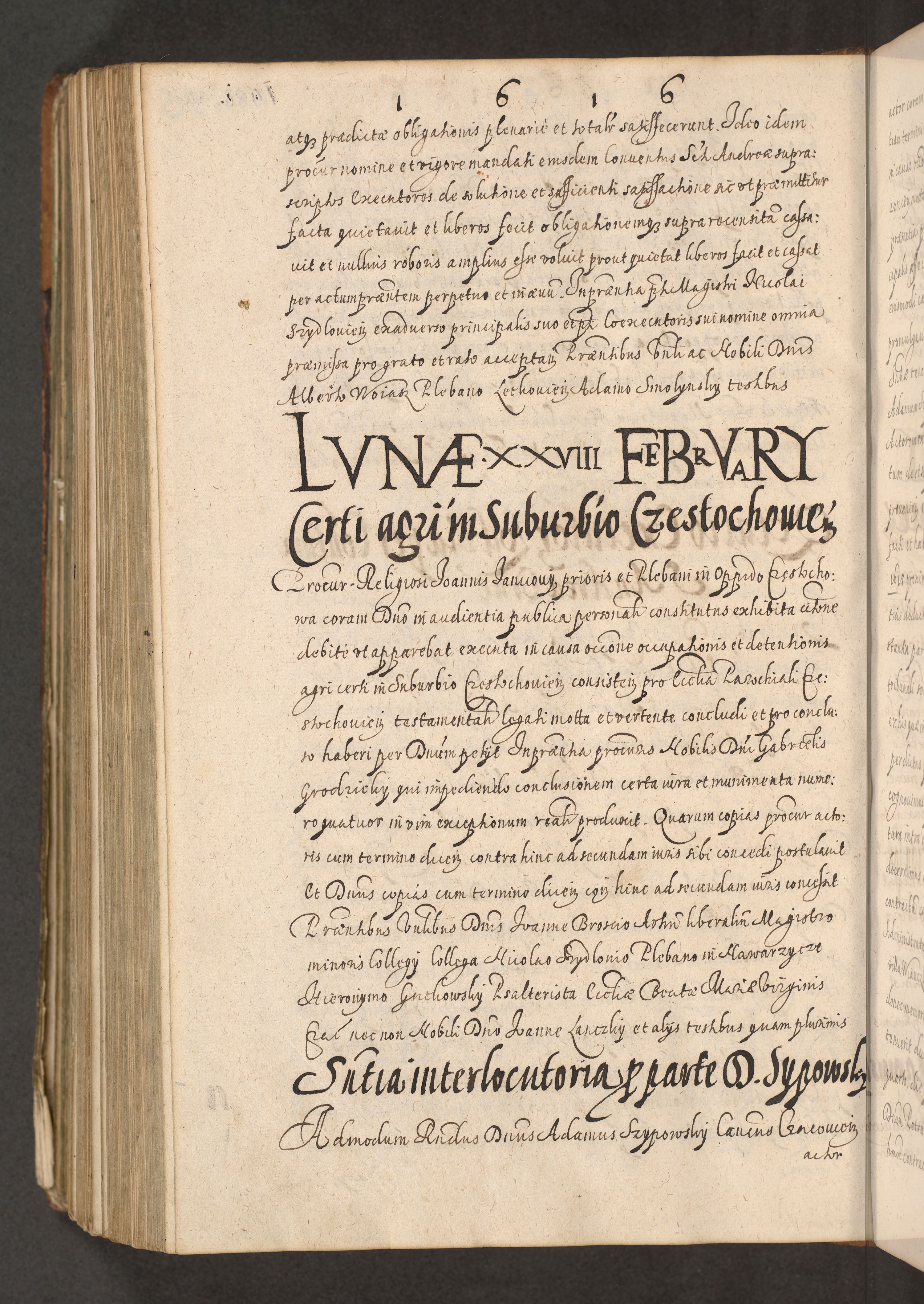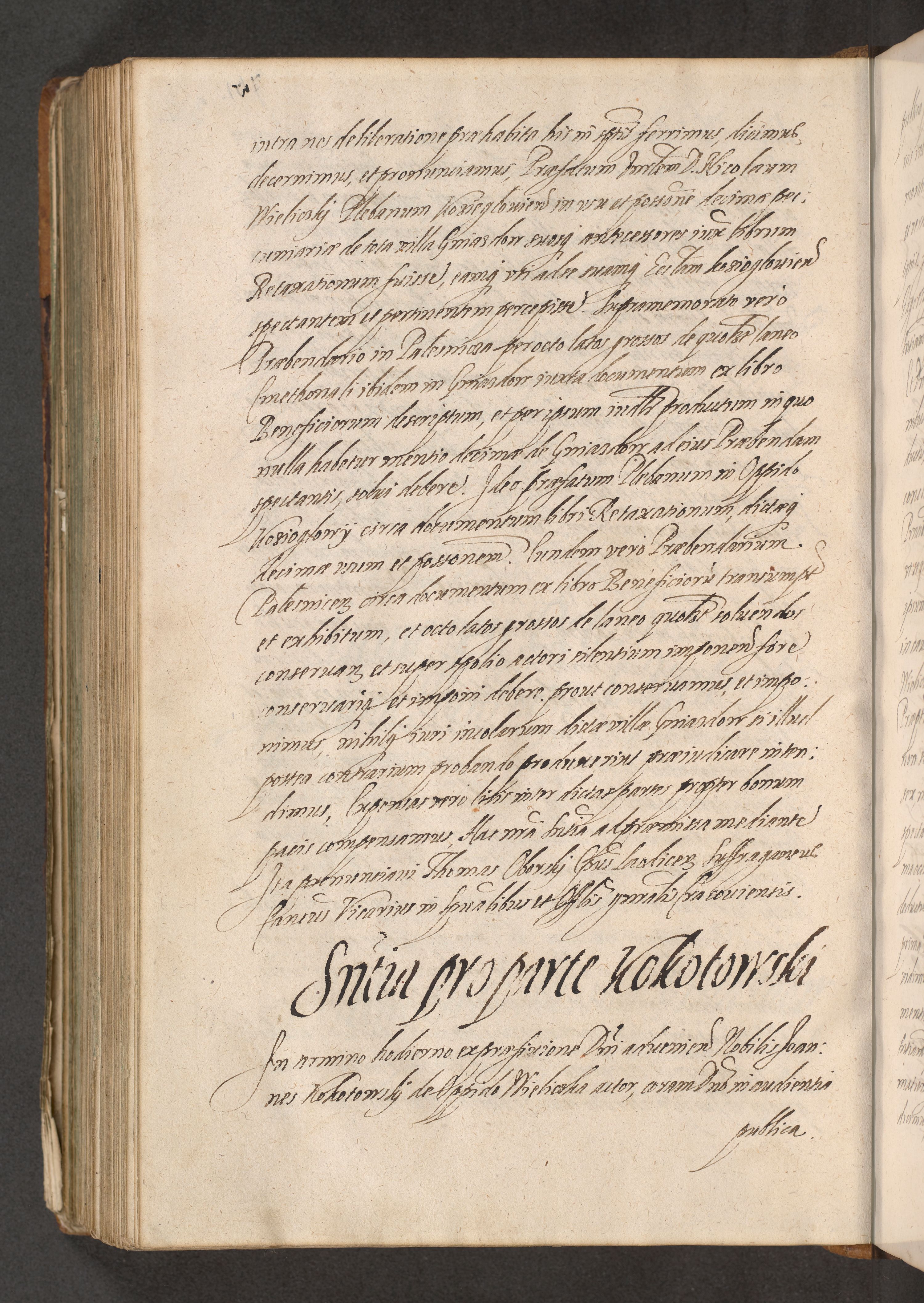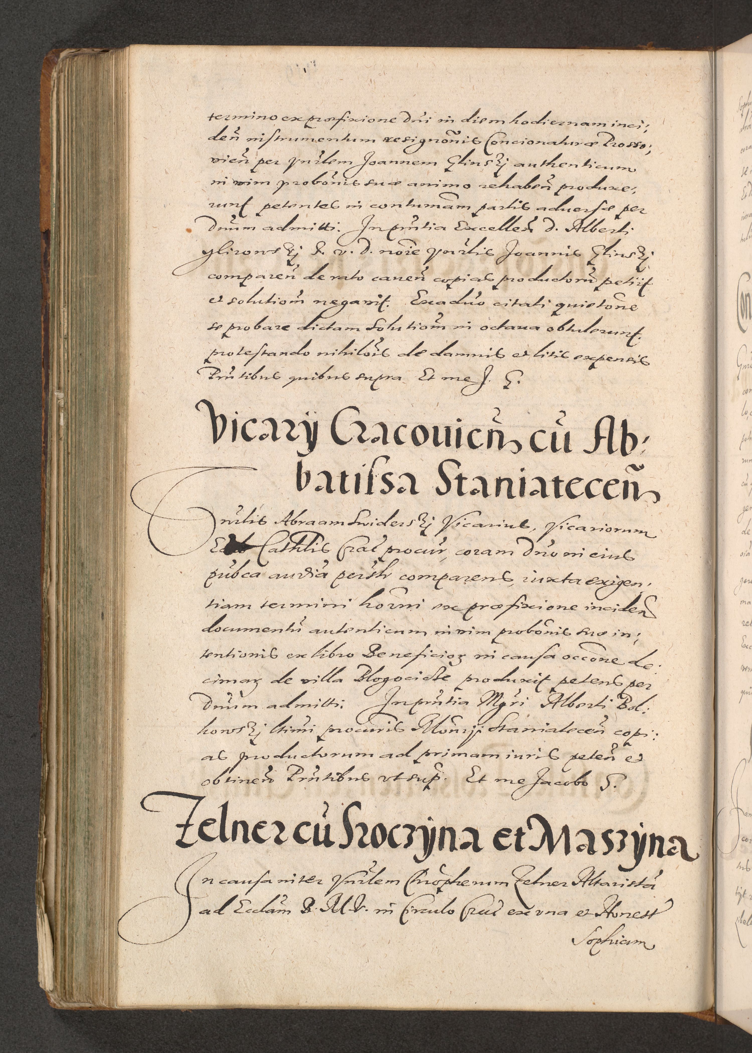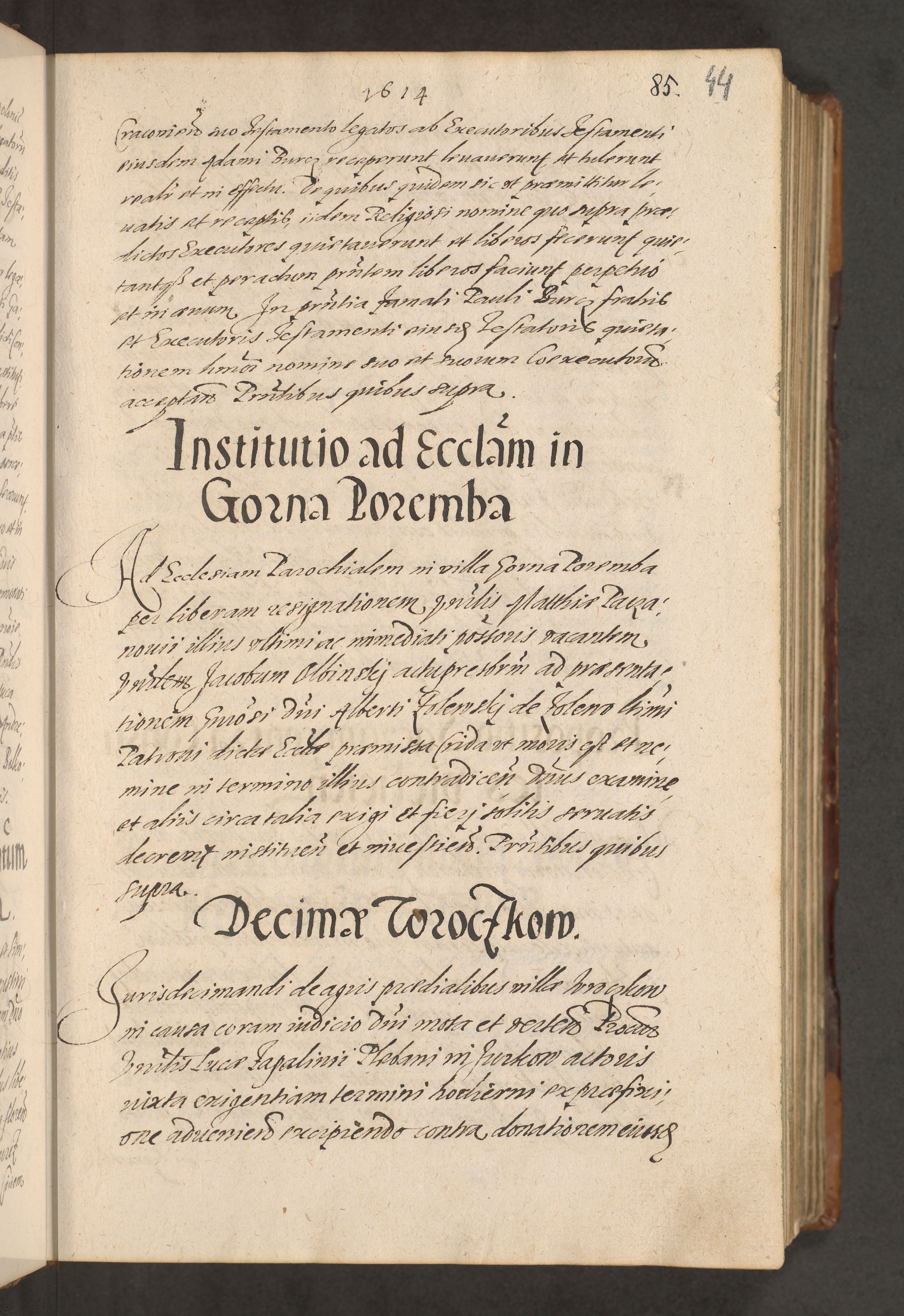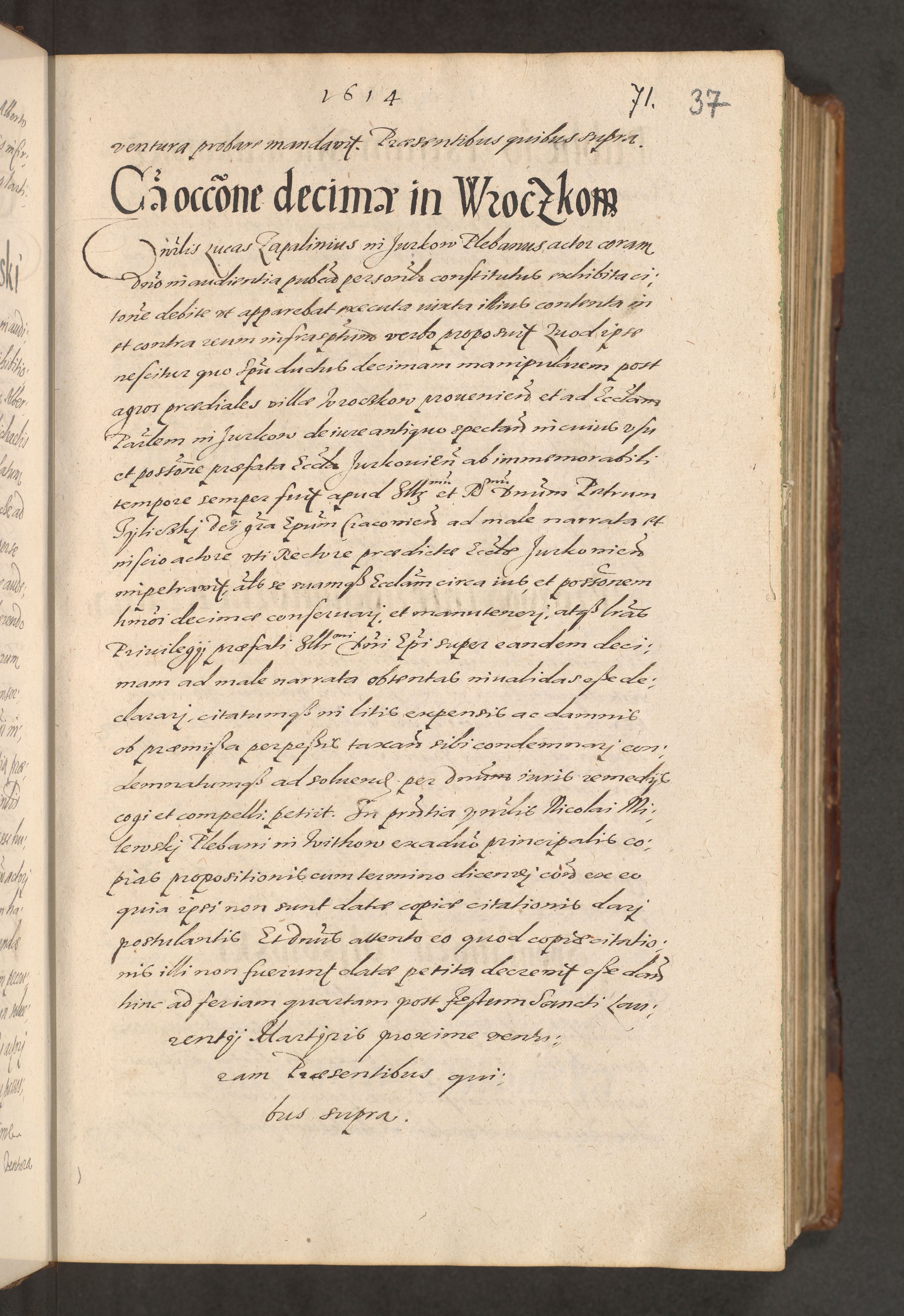Illustrissimo et Reverendissimo in Christo Patre Domino Domino Petro Tylicki Dei et Apostolice Sedis Gratia Episcopo Cracoviensis Duce Severiensis Acta actorum causarum sententiarum tam interloquutoriarum quam definitivarum decretorum obligationum, quietationum, recognitionum, constitutionum procuratorum etc. etc. coram Admodum Reverendo Domino Thoma Oborski I. V. Doctore Canonico Vicario in Spiritualibus et Officiali generali Cracoviensis in anno Domini Millesimo Sexcentessimo Decimoquarto Cuius Indictio duodecima Pontificus SS. D. N. D. Pauli Divina providentia Papae quinti Anno decimo foeliciter incipiunt