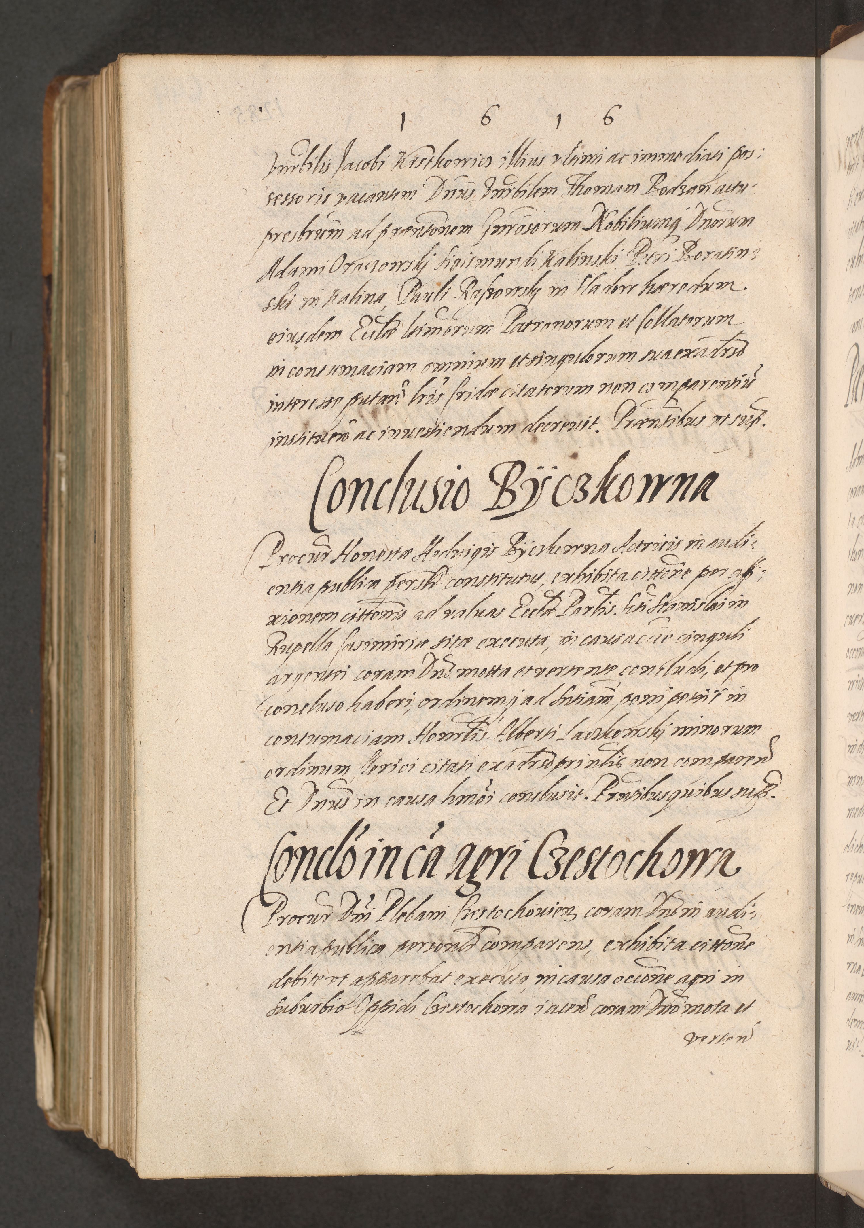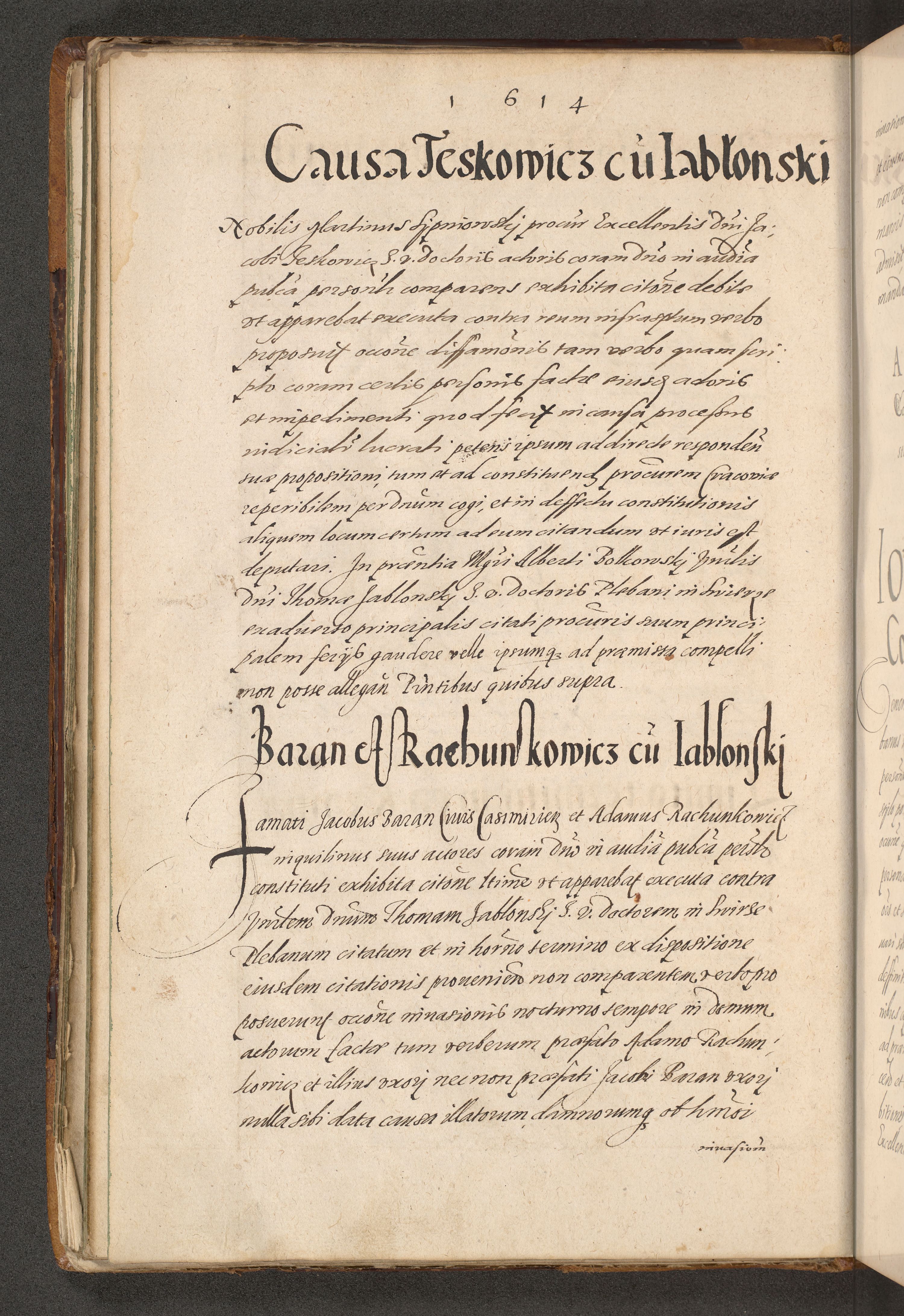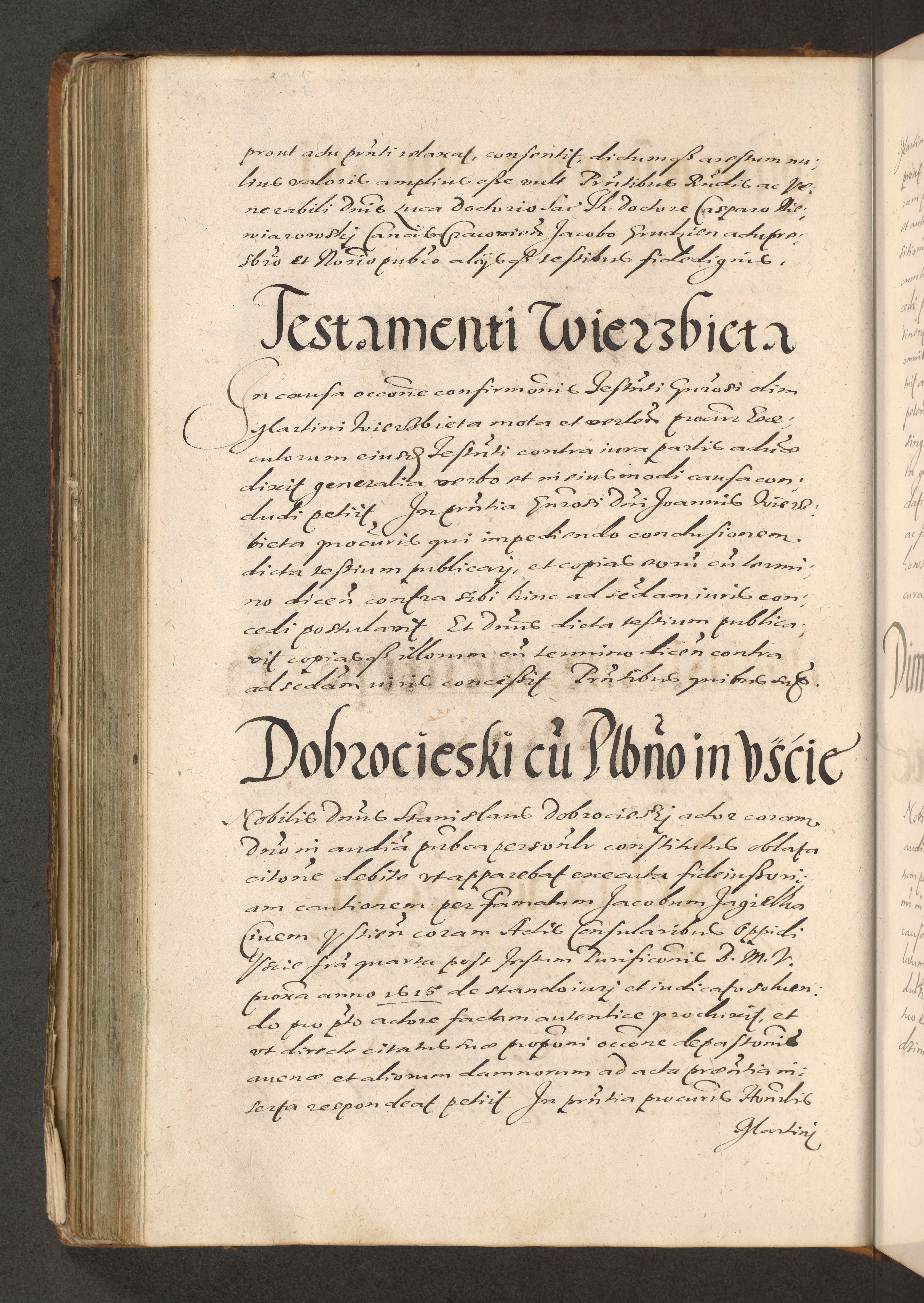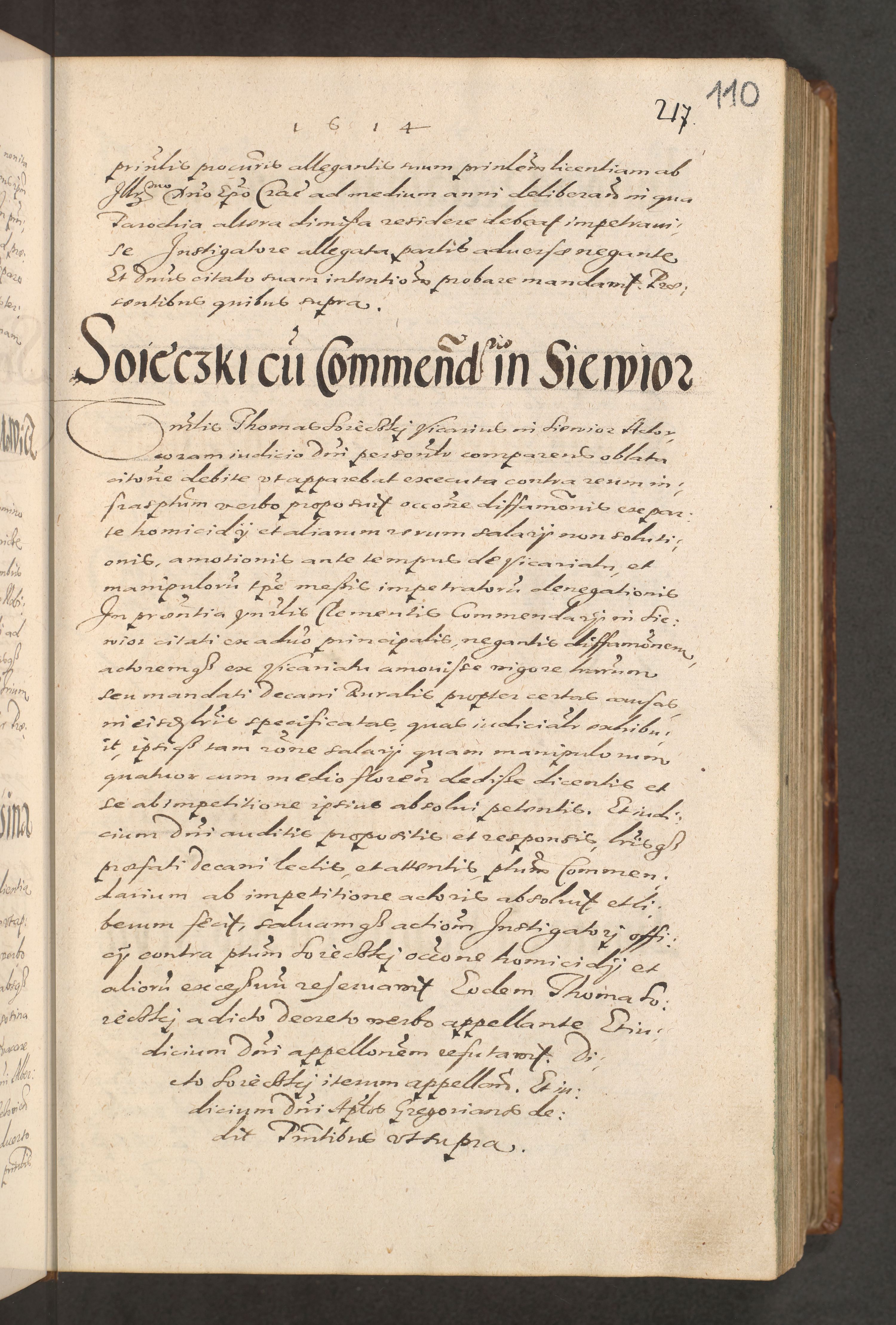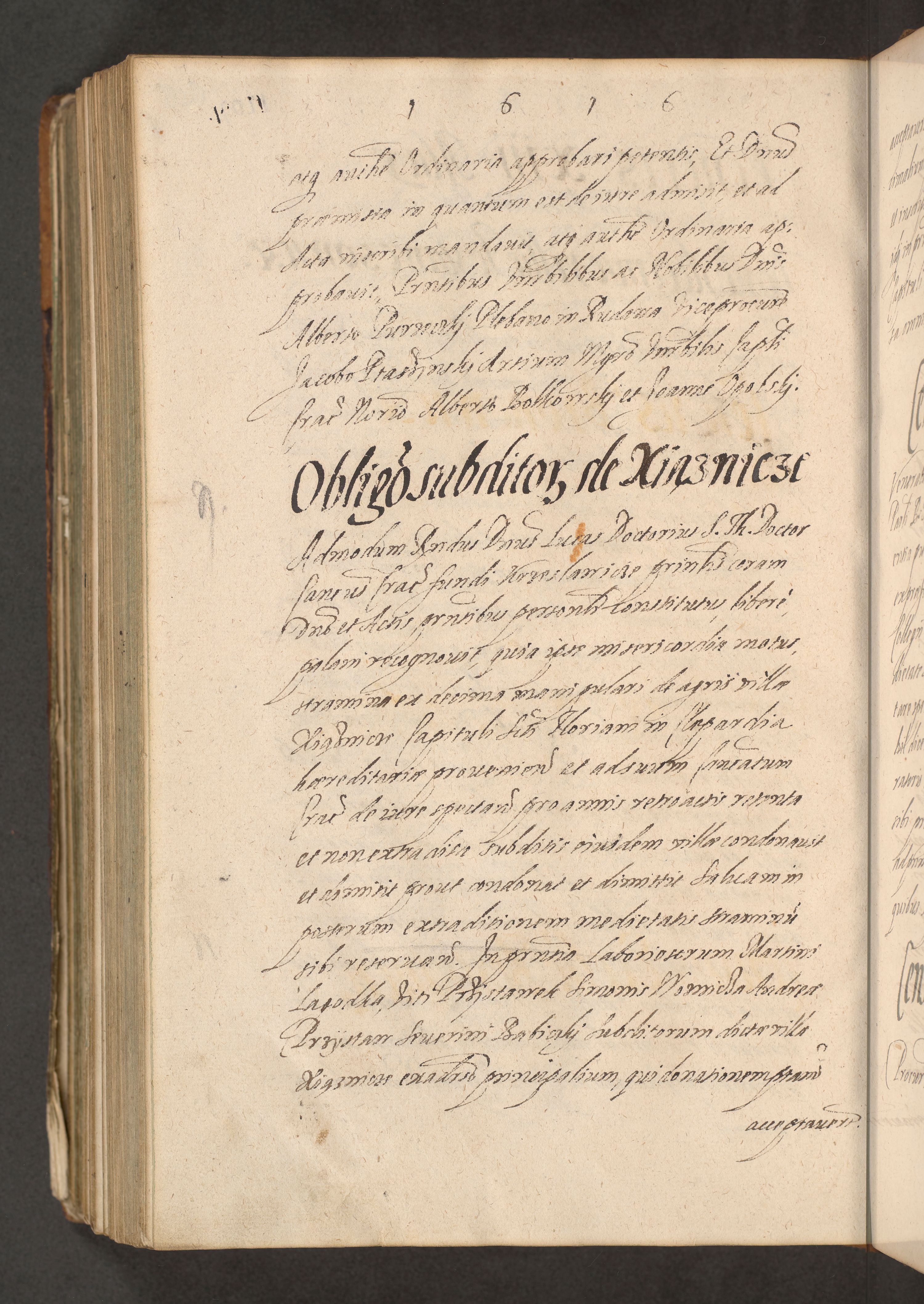 Illustrissimo et Reverendissimo in Christo Patre Domino Domino Petro Tylicki Dei et Apostolice Sedis Gratia Episcopo Cracoviensis Duce Severiensis Acta actorum causarum sententiarum tam interloquutoriarum quam definitivarum decretorum obligationum, quietationum, recognitionum, constitutionum procuratorum etc. etc. coram Admodum Reverendo Domino Thoma Oborski I. V. Doctore Canonico Vicario in Spiritualibus et Officiali generali Cracoviensis in anno Domini Millesimo Sexcentessimo Decimoquarto Cuius Indictio duodecima Pontificus SS. D. N. D. Pauli Divina providentia Papae quinti Anno decimo foeliciter incipiunt