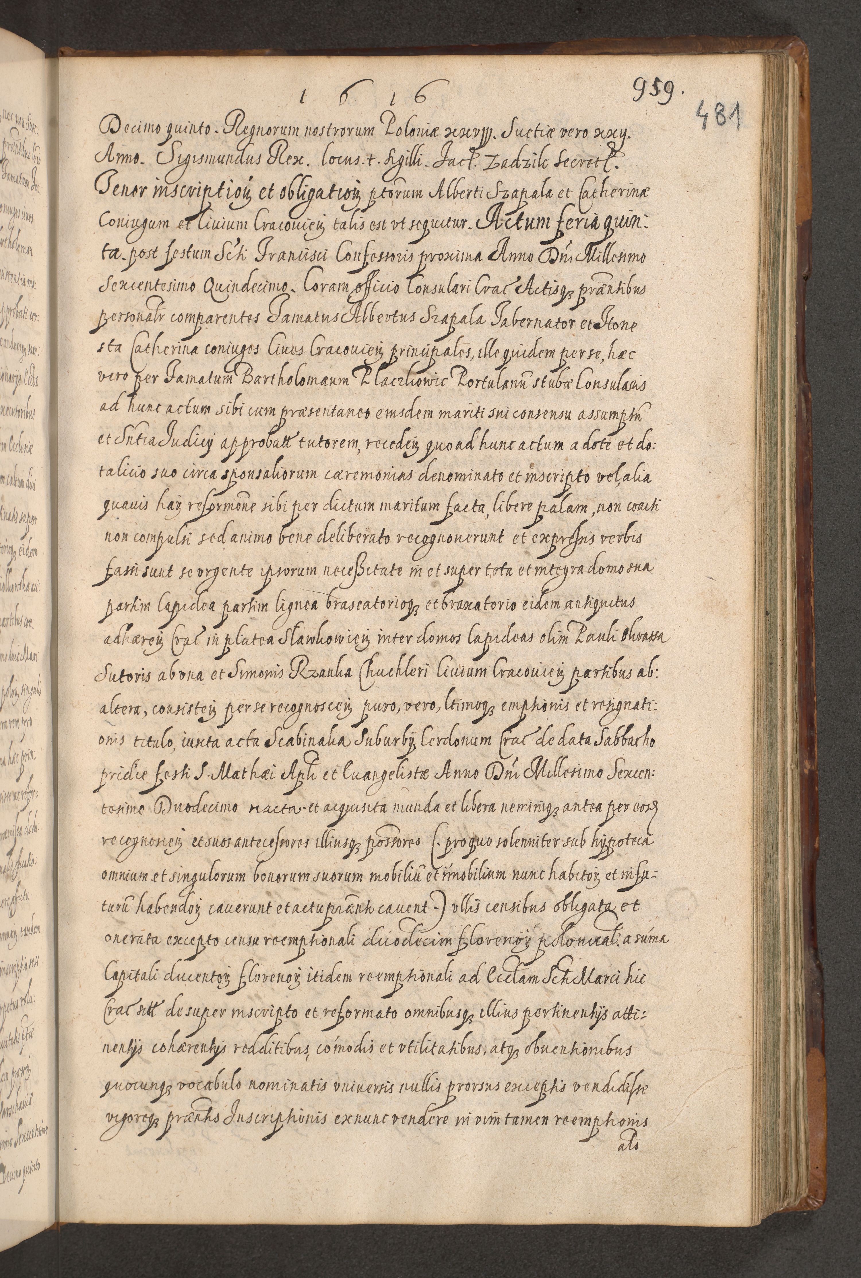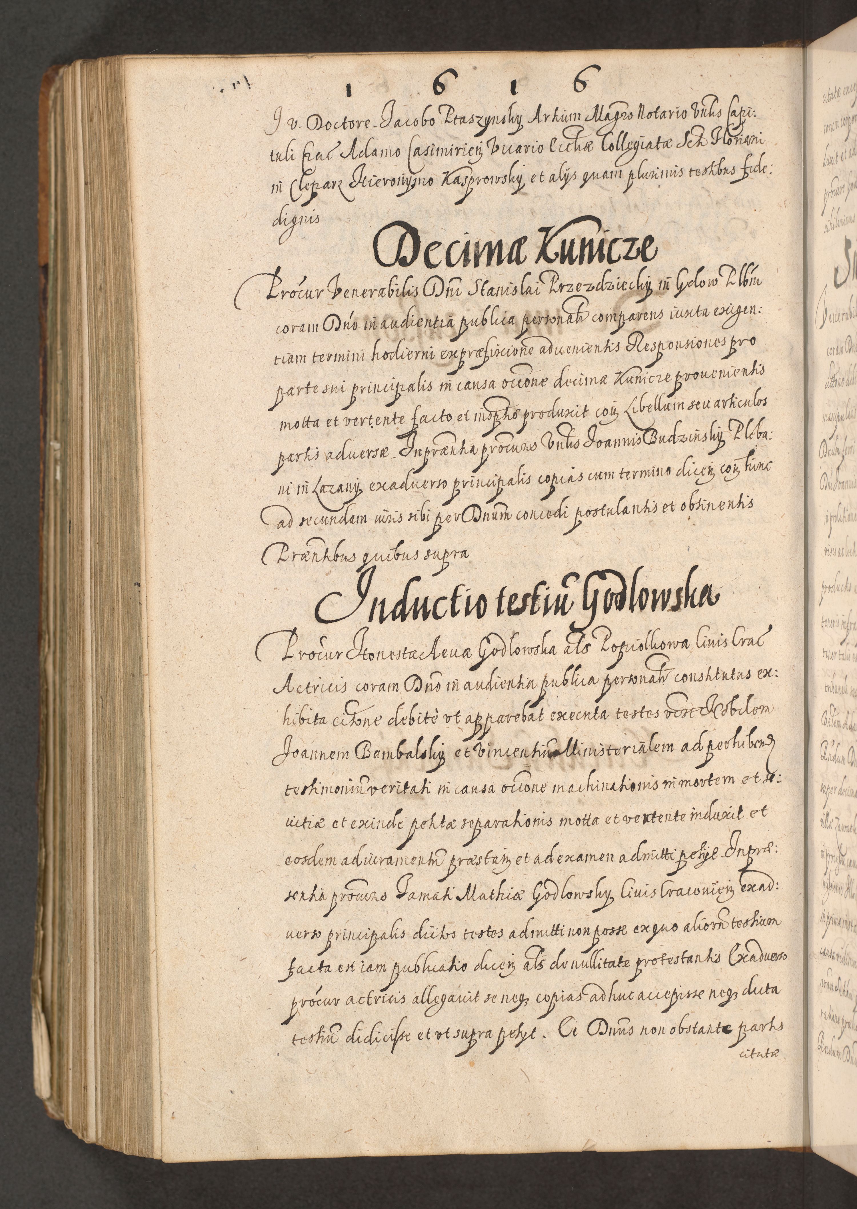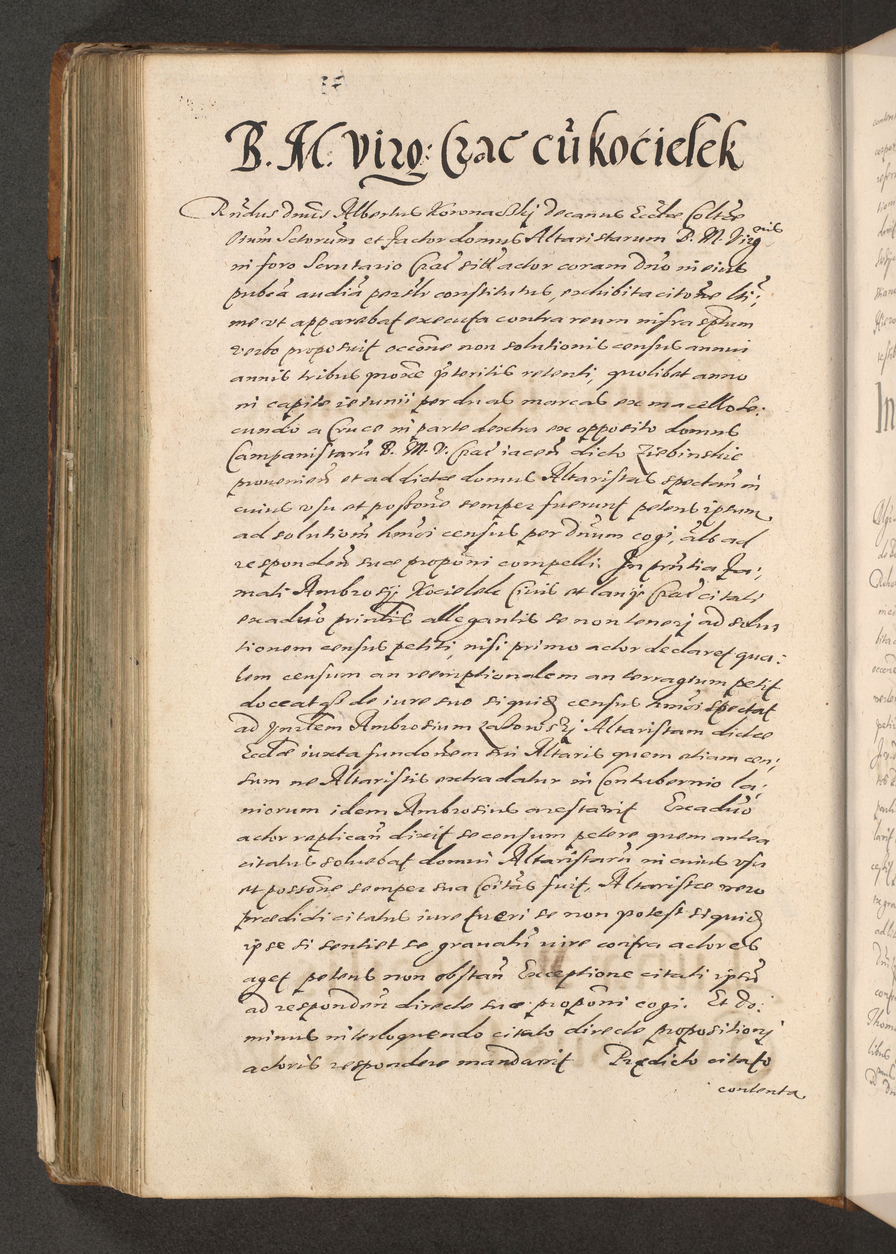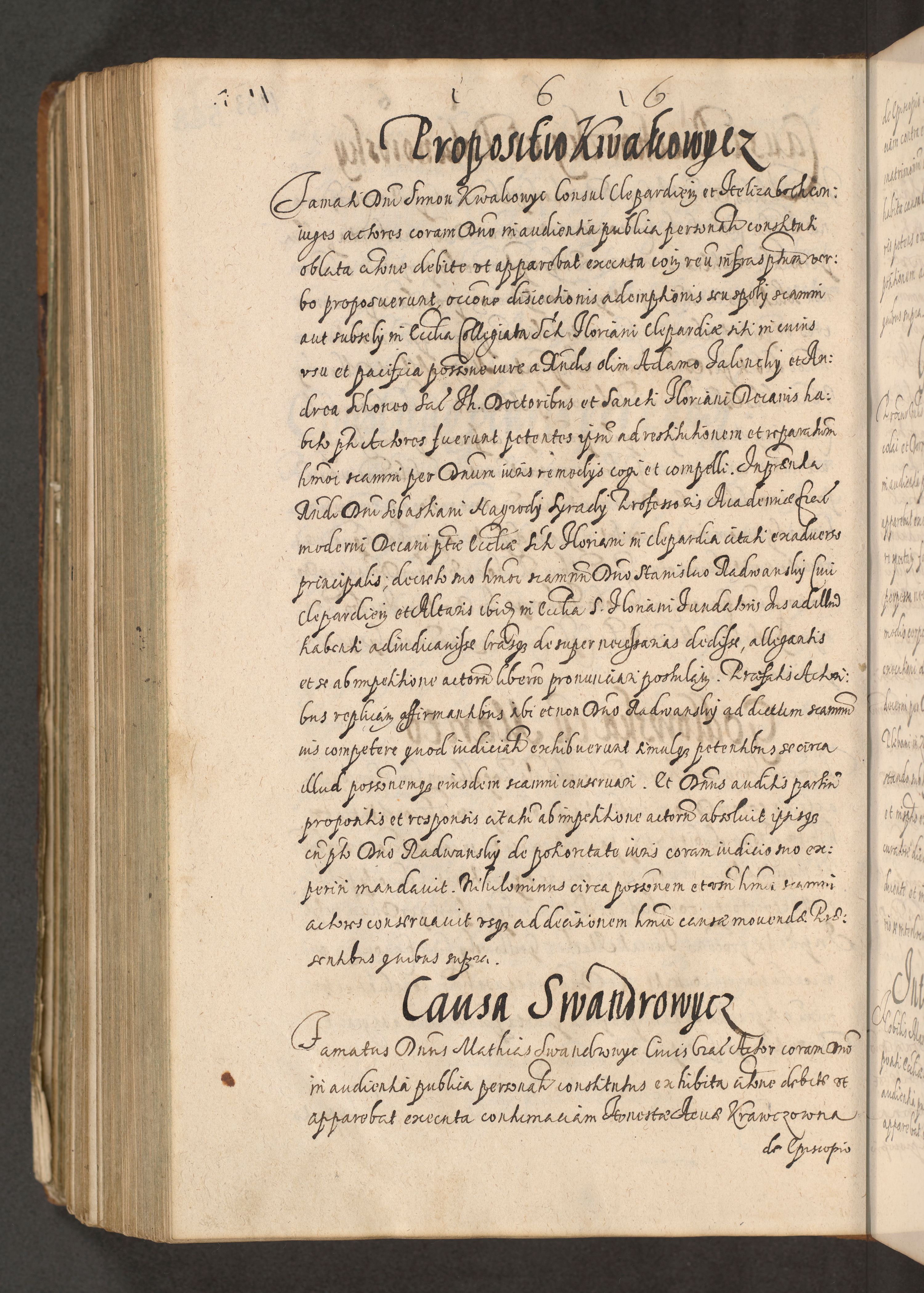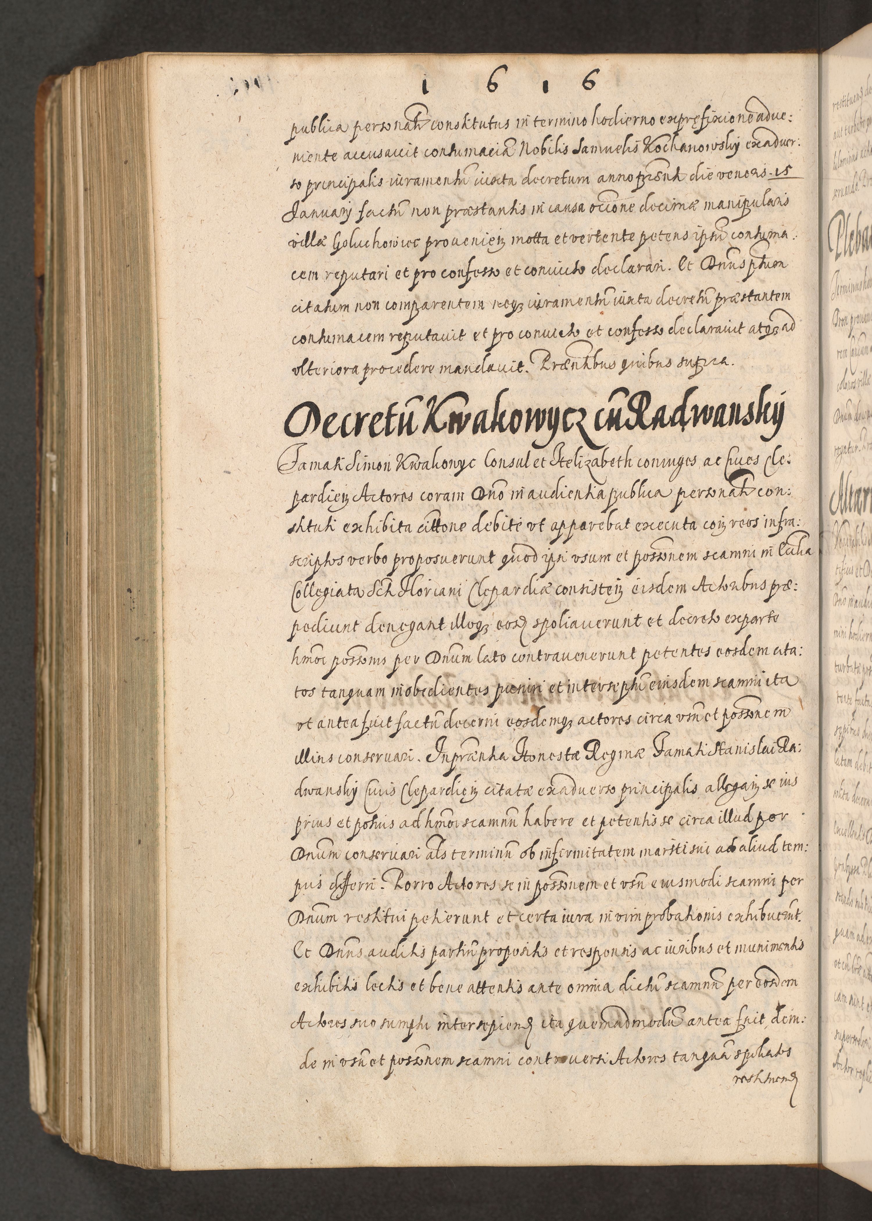 Illustrissimo et Reverendissimo in Christo Patre Domino Domino Petro Tylicki Dei et Apostolice Sedis Gratia Episcopo Cracoviensis Duce Severiensis Acta actorum causarum sententiarum tam interloquutoriarum quam definitivarum decretorum obligationum, quietationum, recognitionum, constitutionum procuratorum etc. etc. coram Admodum Reverendo Domino Thoma Oborski I. V. Doctore Canonico Vicario in Spiritualibus et Officiali generali Cracoviensis in anno Domini Millesimo Sexcentessimo Decimoquarto Cuius Indictio duodecima Pontificus SS. D. N. D. Pauli Divina providentia Papae quinti Anno decimo foeliciter incipiunt