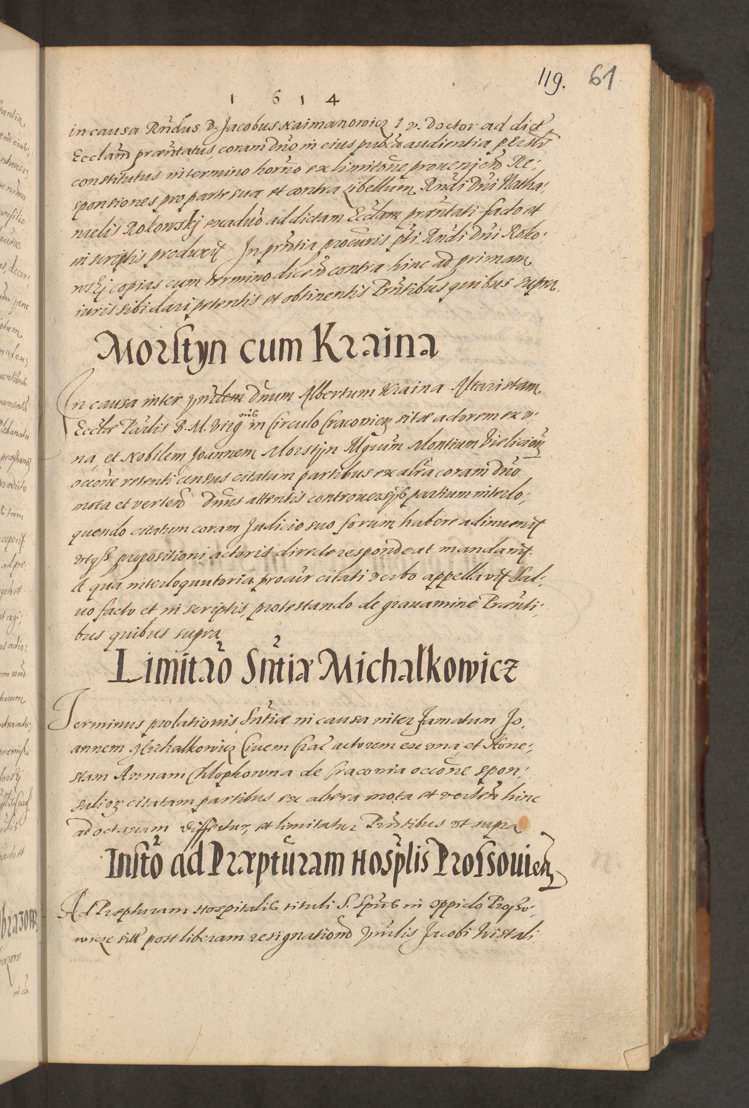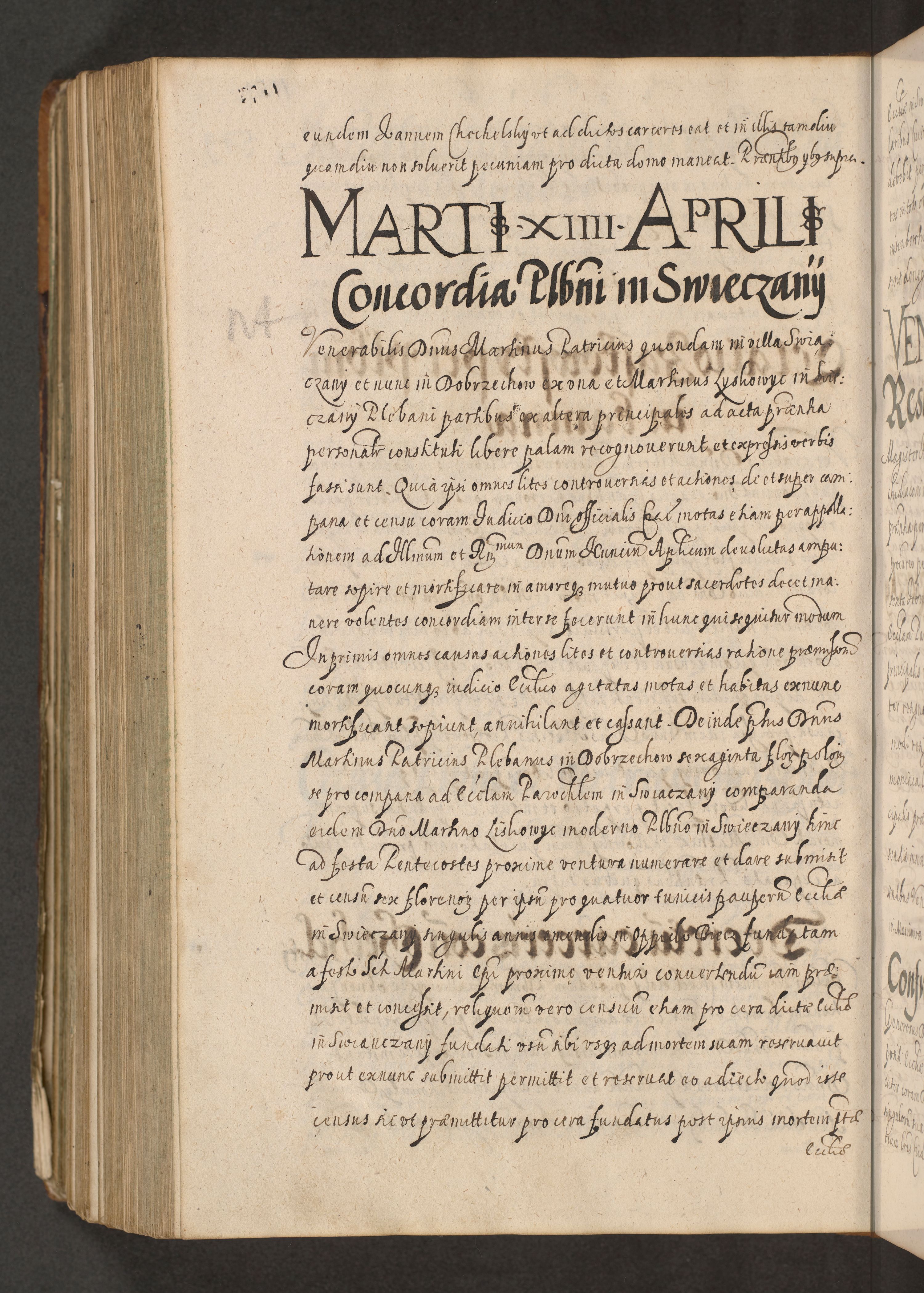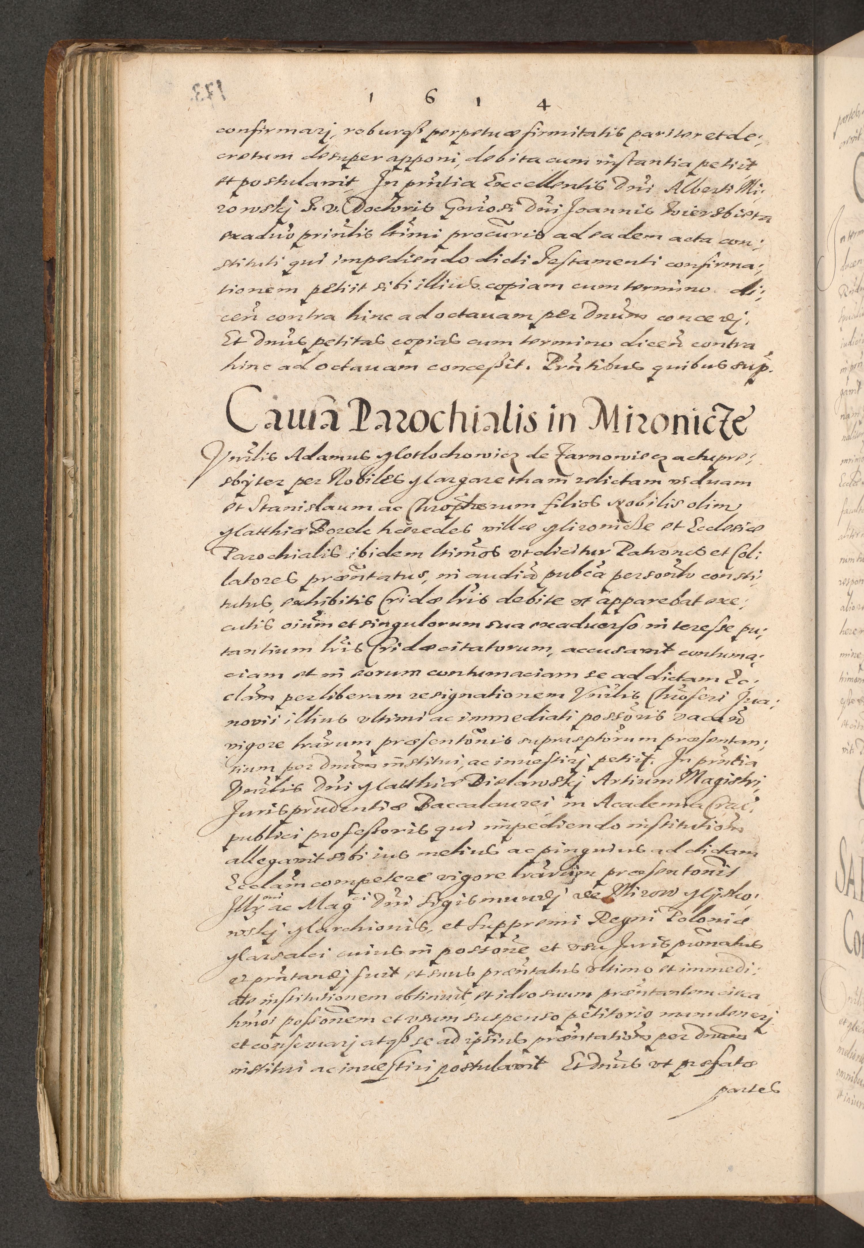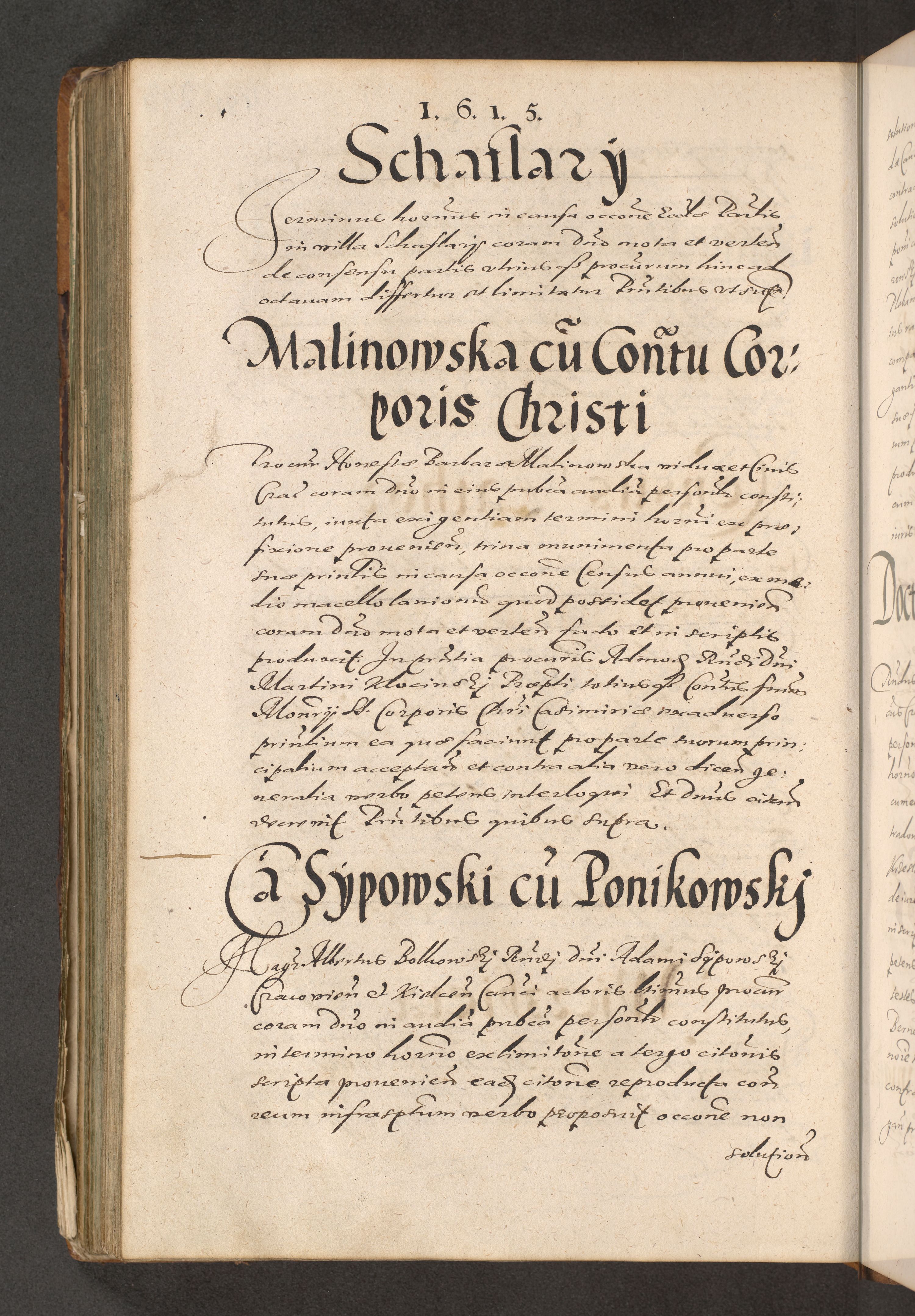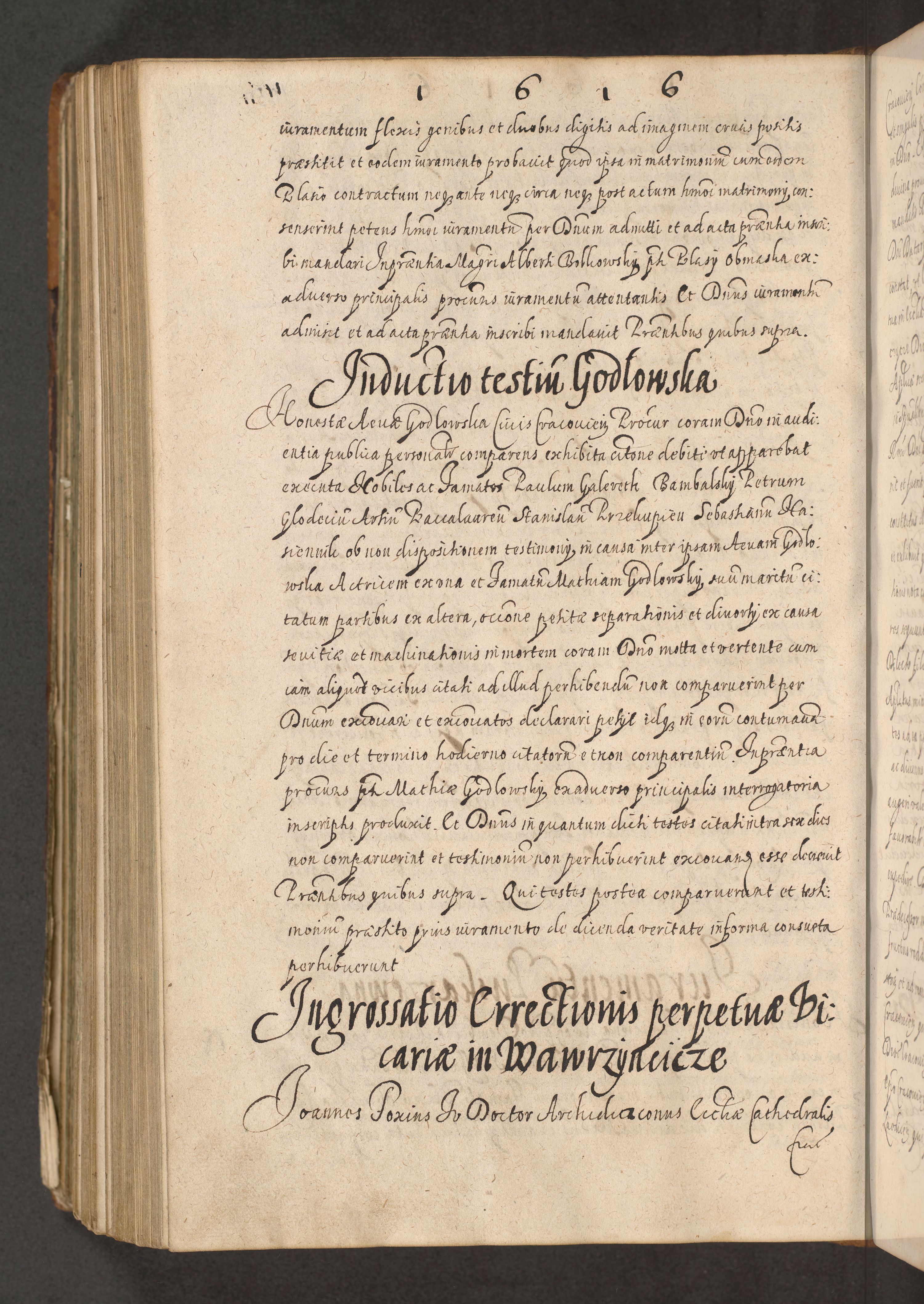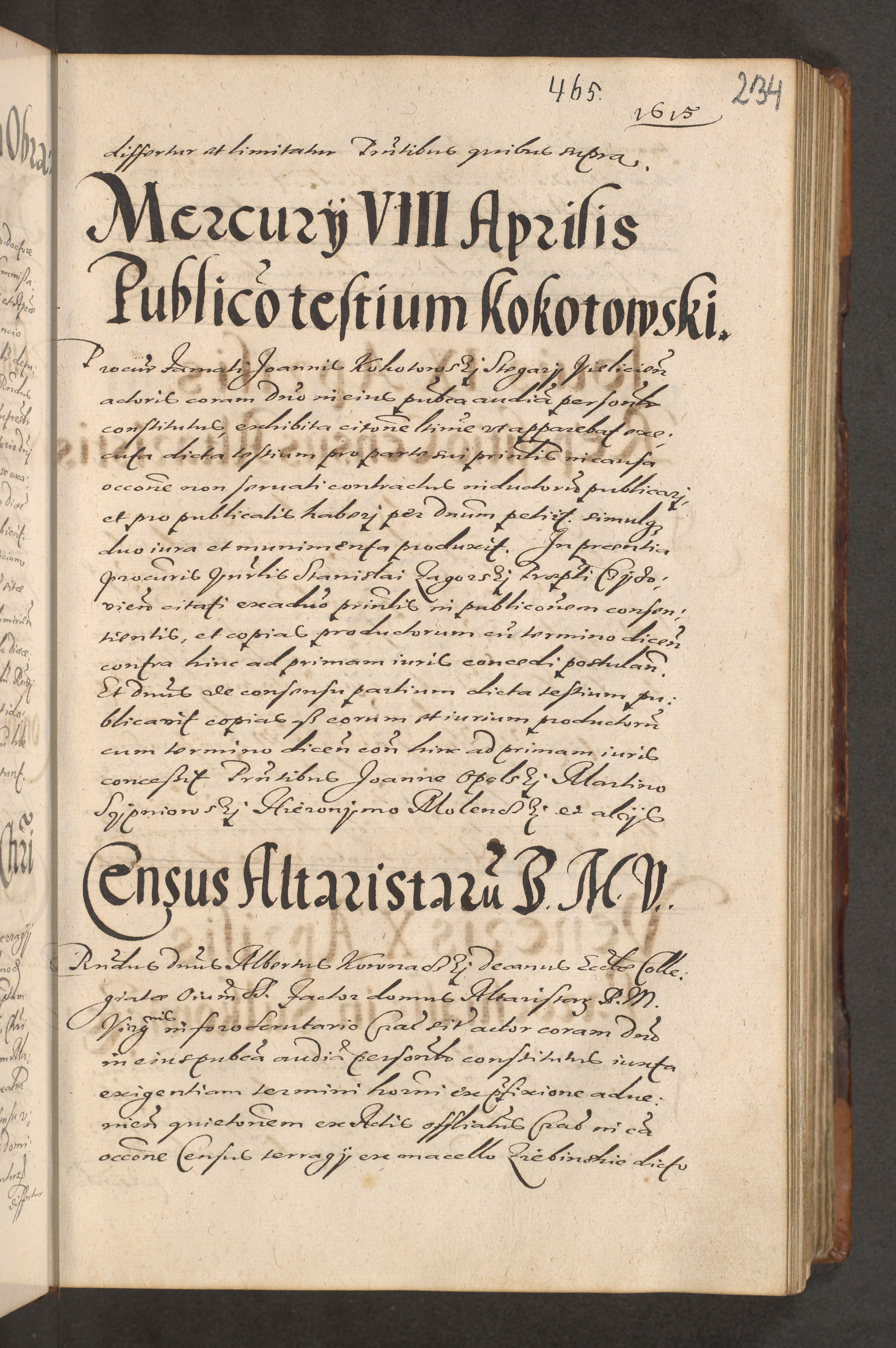 Illustrissimo et Reverendissimo in Christo Patre Domino Domino Petro Tylicki Dei et Apostolice Sedis Gratia Episcopo Cracoviensis Duce Severiensis Acta actorum causarum sententiarum tam interloquutoriarum quam definitivarum decretorum obligationum, quietationum, recognitionum, constitutionum procuratorum etc. etc. coram Admodum Reverendo Domino Thoma Oborski I. V. Doctore Canonico Vicario in Spiritualibus et Officiali generali Cracoviensis in anno Domini Millesimo Sexcentessimo Decimoquarto Cuius Indictio duodecima Pontificus SS. D. N. D. Pauli Divina providentia Papae quinti Anno decimo foeliciter incipiunt