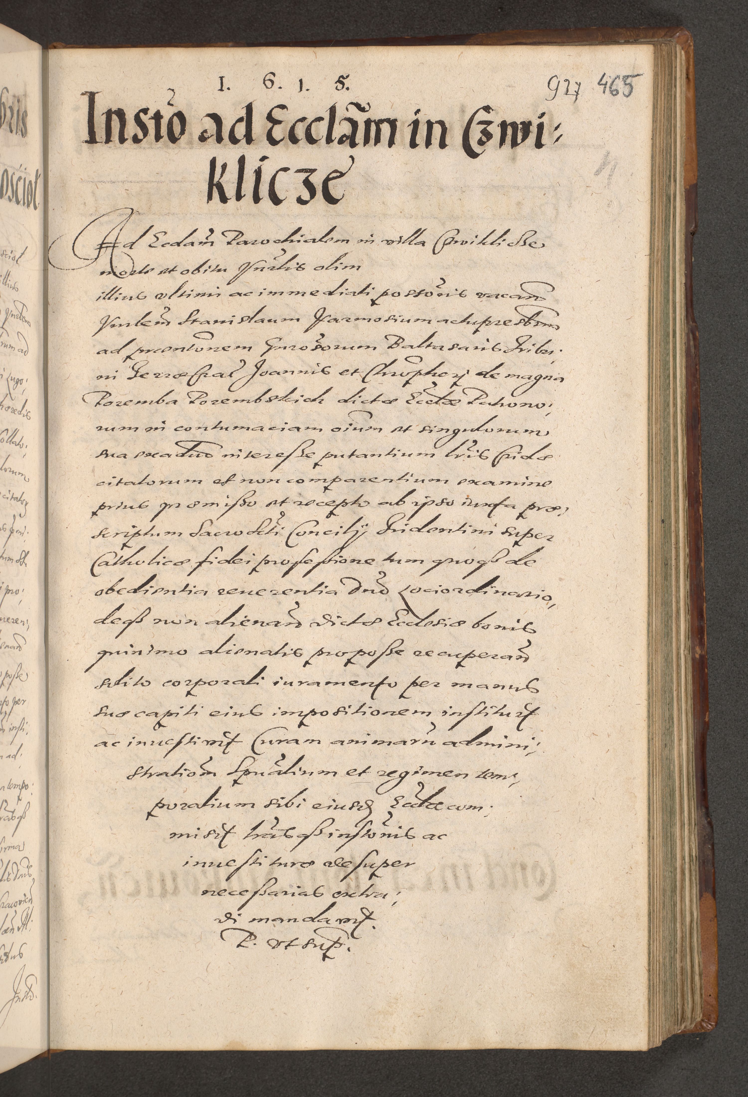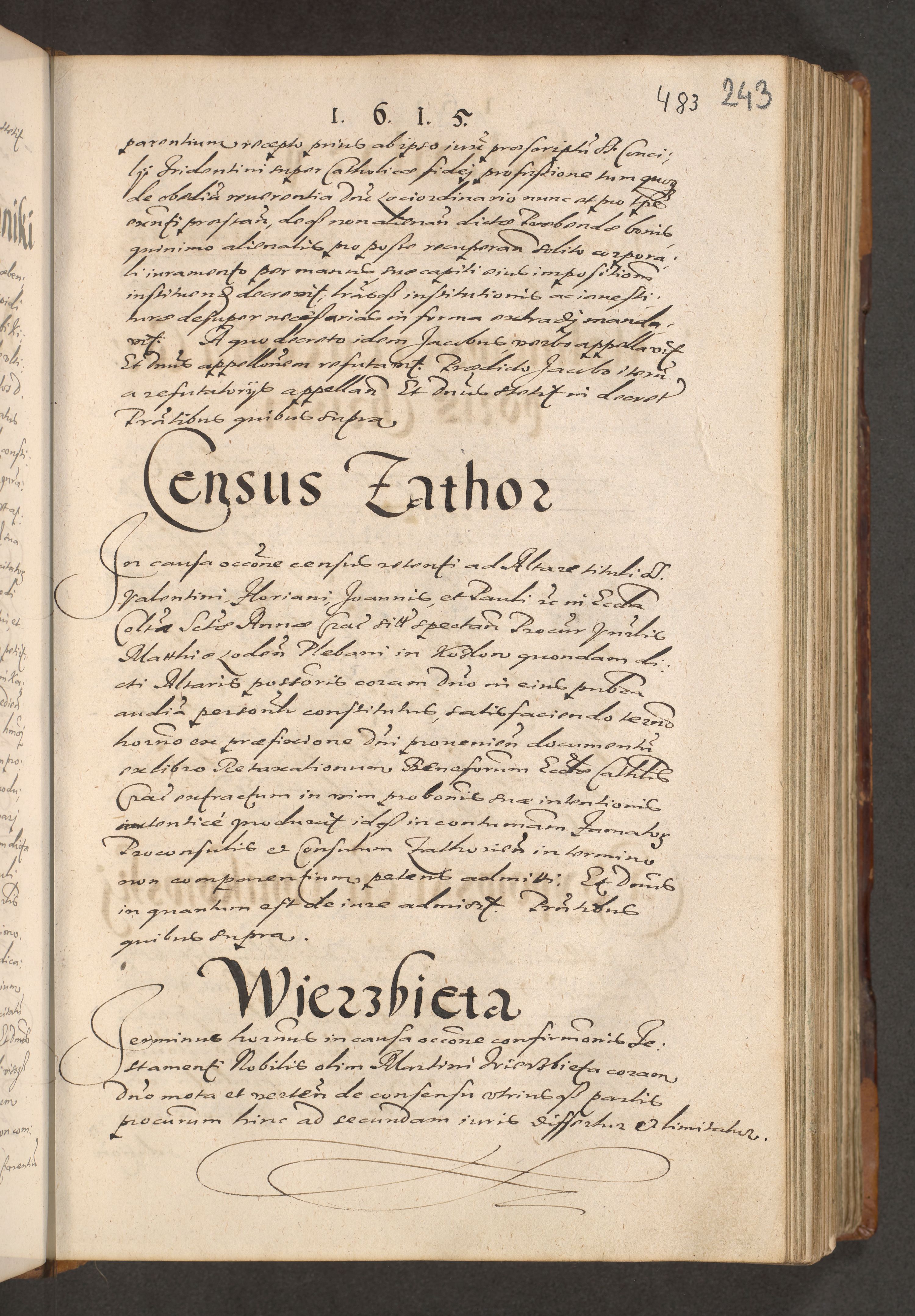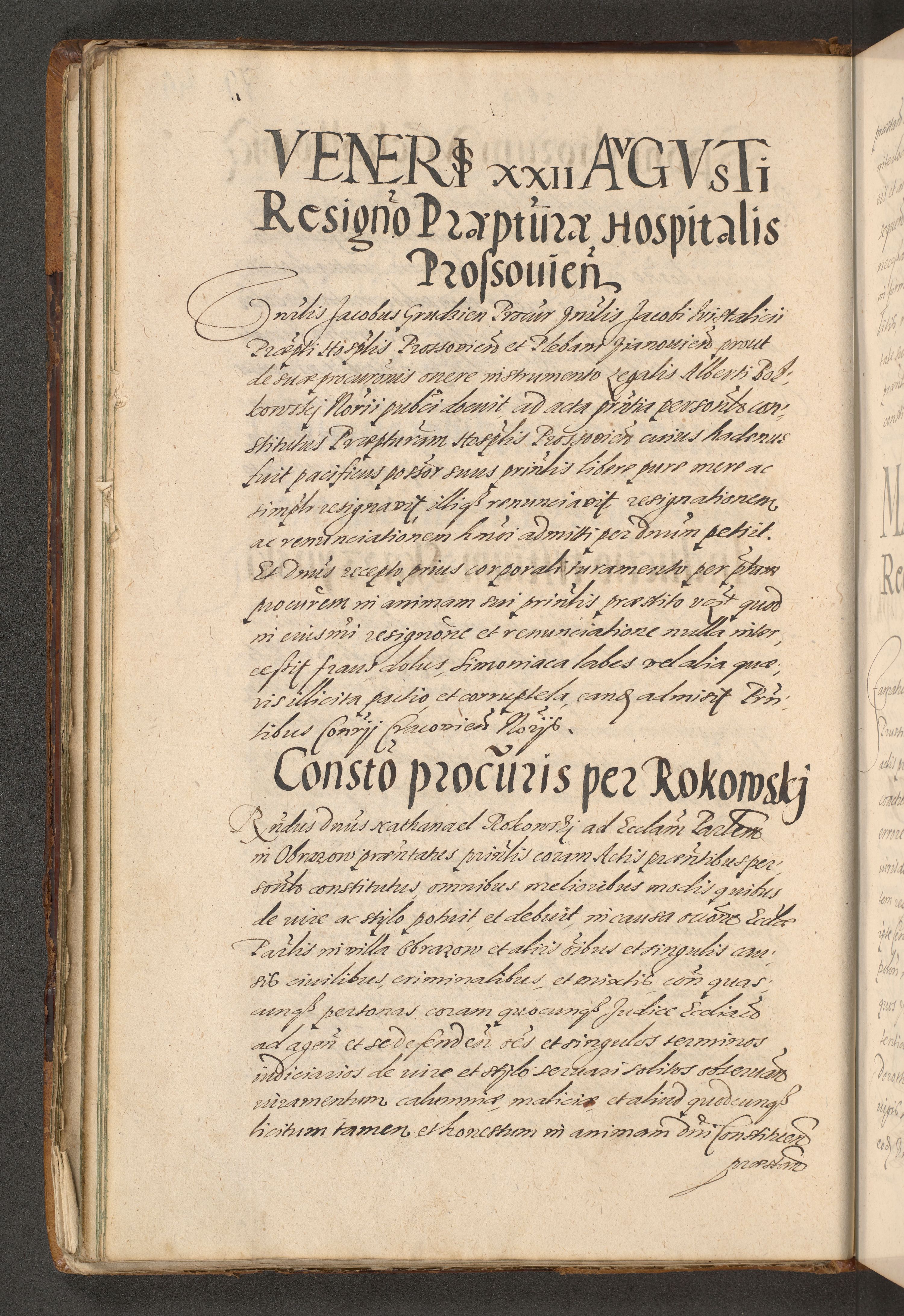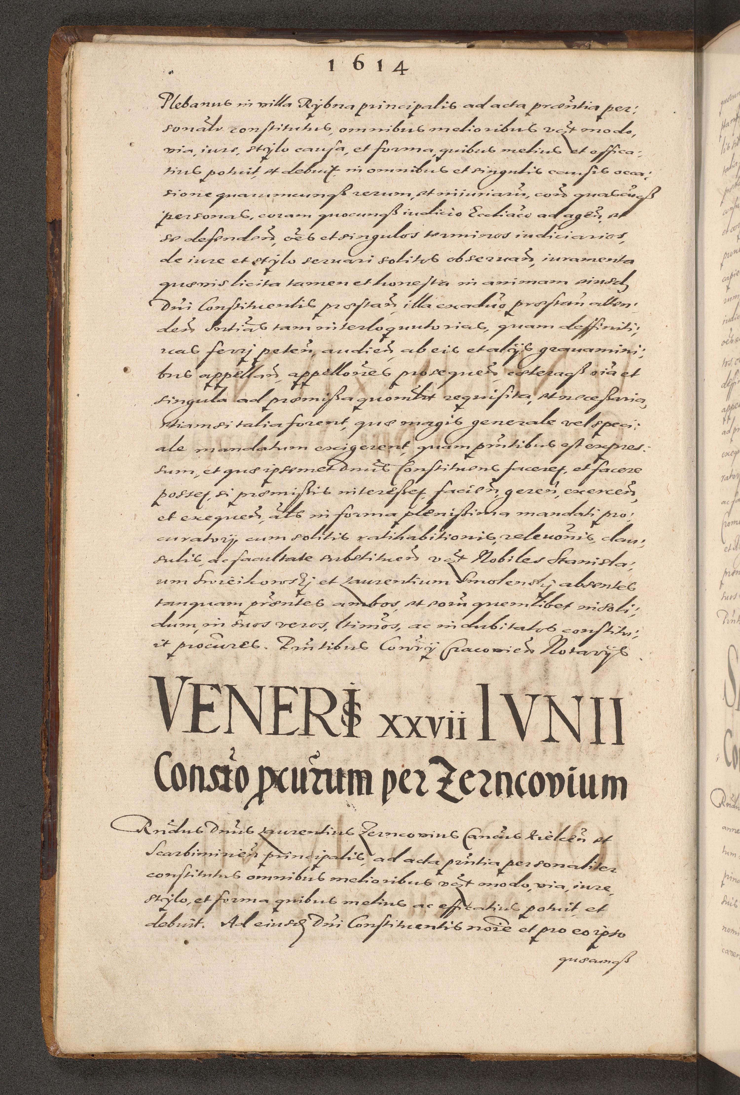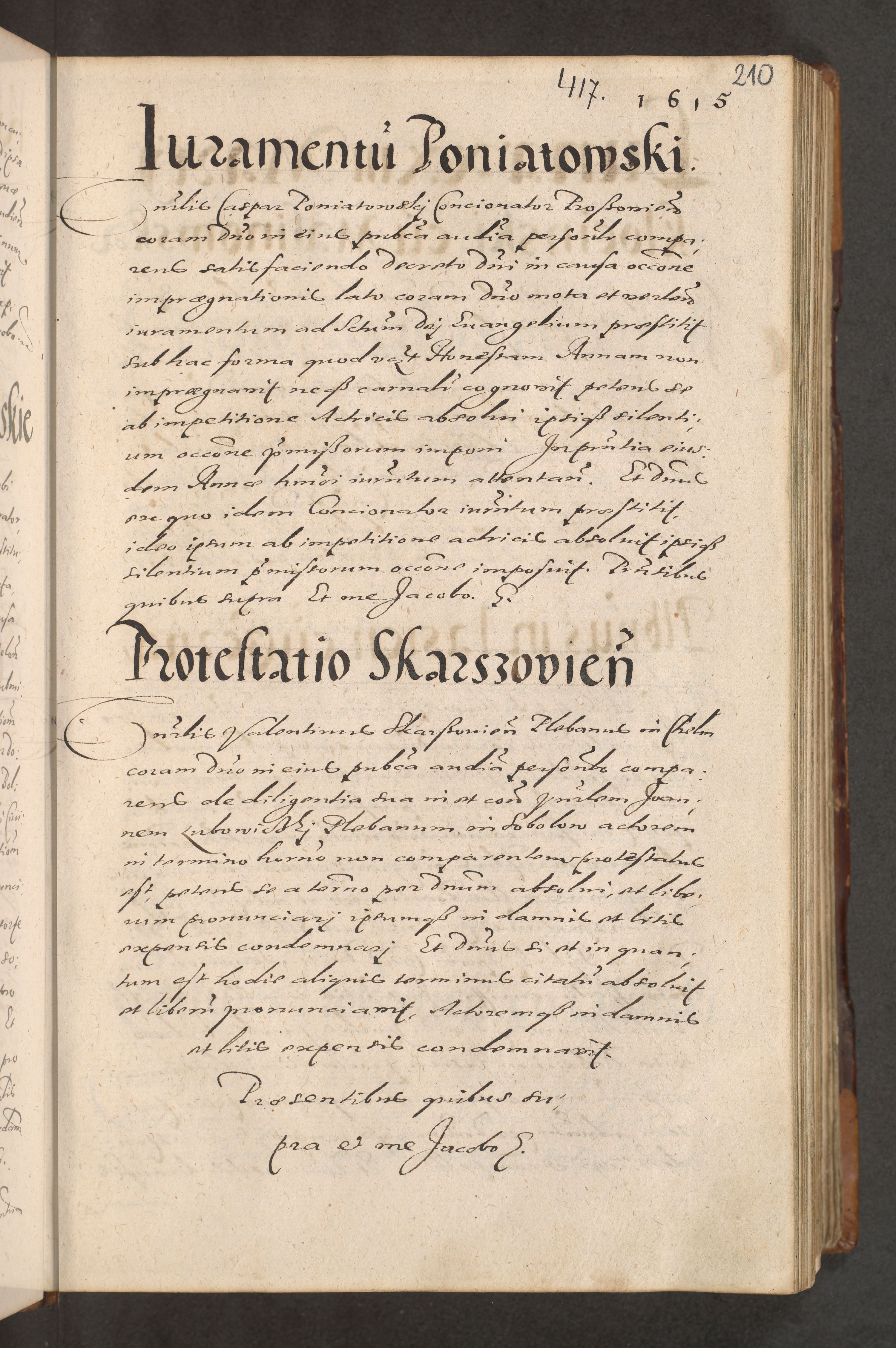Illustrissimo et Reverendissimo in Christo Patre Domino Domino Petro Tylicki Dei et Apostolice Sedis Gratia Episcopo Cracoviensis Duce Severiensis Acta actorum causarum sententiarum tam interloquutoriarum quam definitivarum decretorum obligationum, quietationum, recognitionum, constitutionum procuratorum etc. etc. coram Admodum Reverendo Domino Thoma Oborski I. V. Doctore Canonico Vicario in Spiritualibus et Officiali generali Cracoviensis in anno Domini Millesimo Sexcentessimo Decimoquarto Cuius Indictio duodecima Pontificus SS. D. N. D. Pauli Divina providentia Papae quinti Anno decimo foeliciter incipiunt