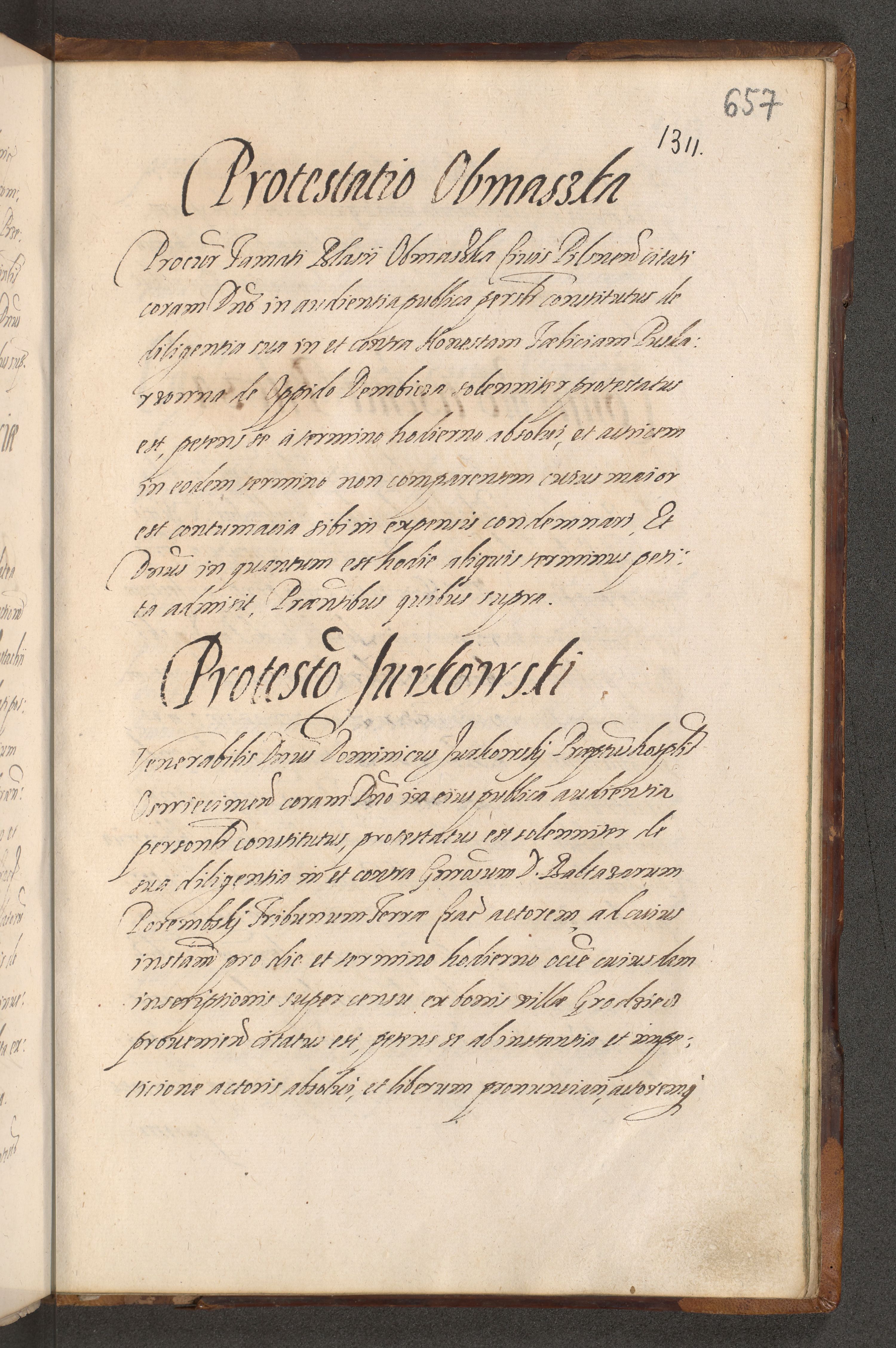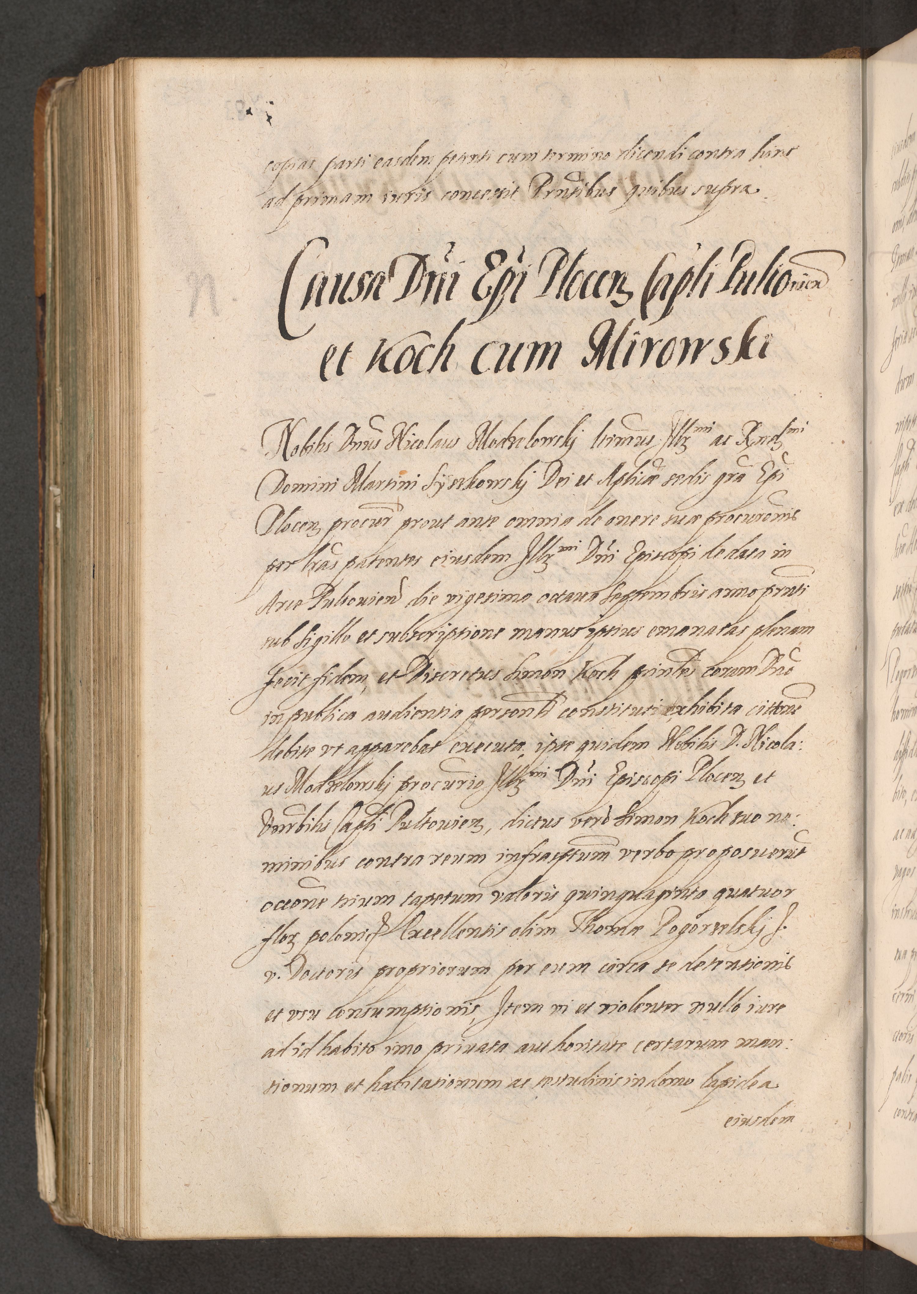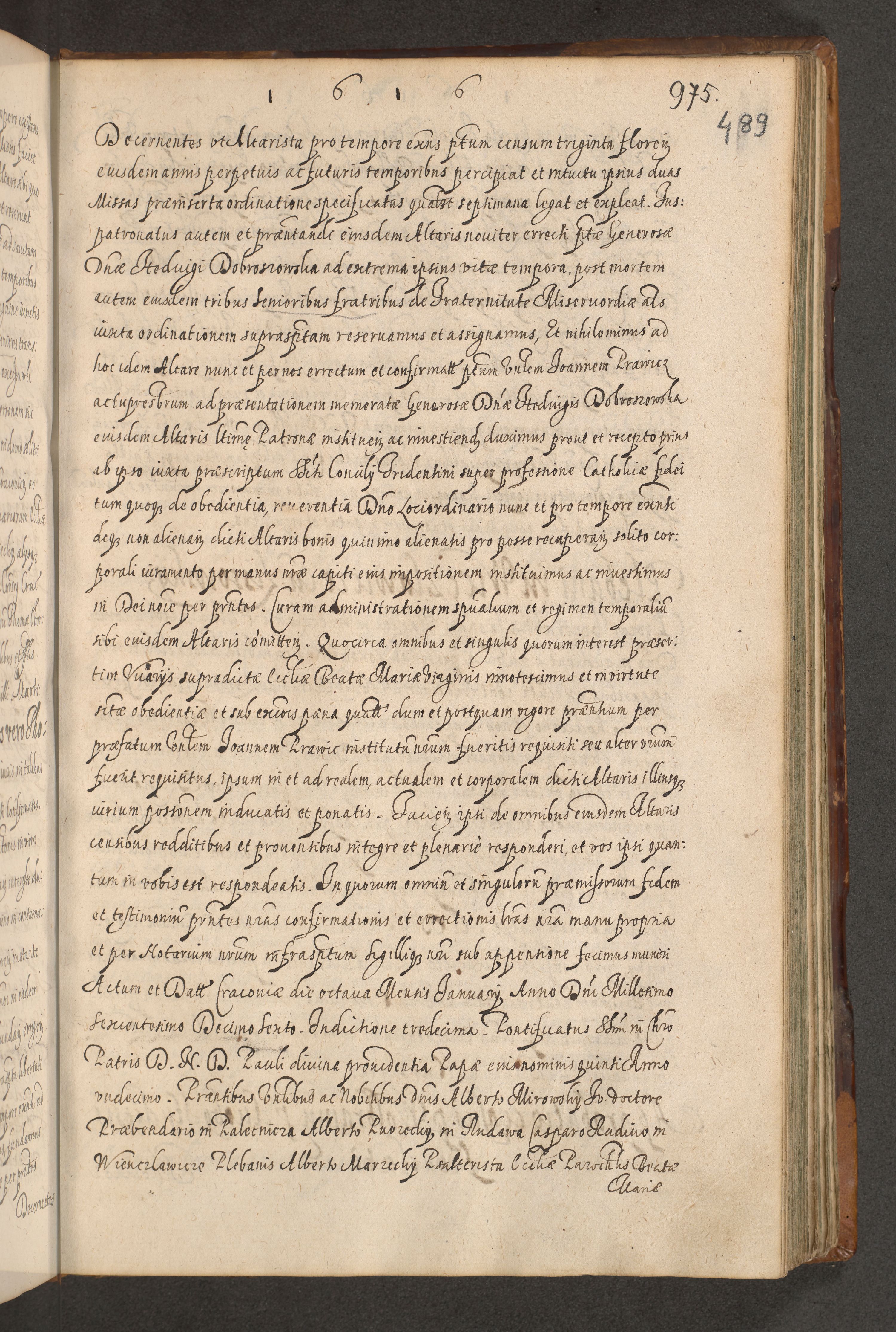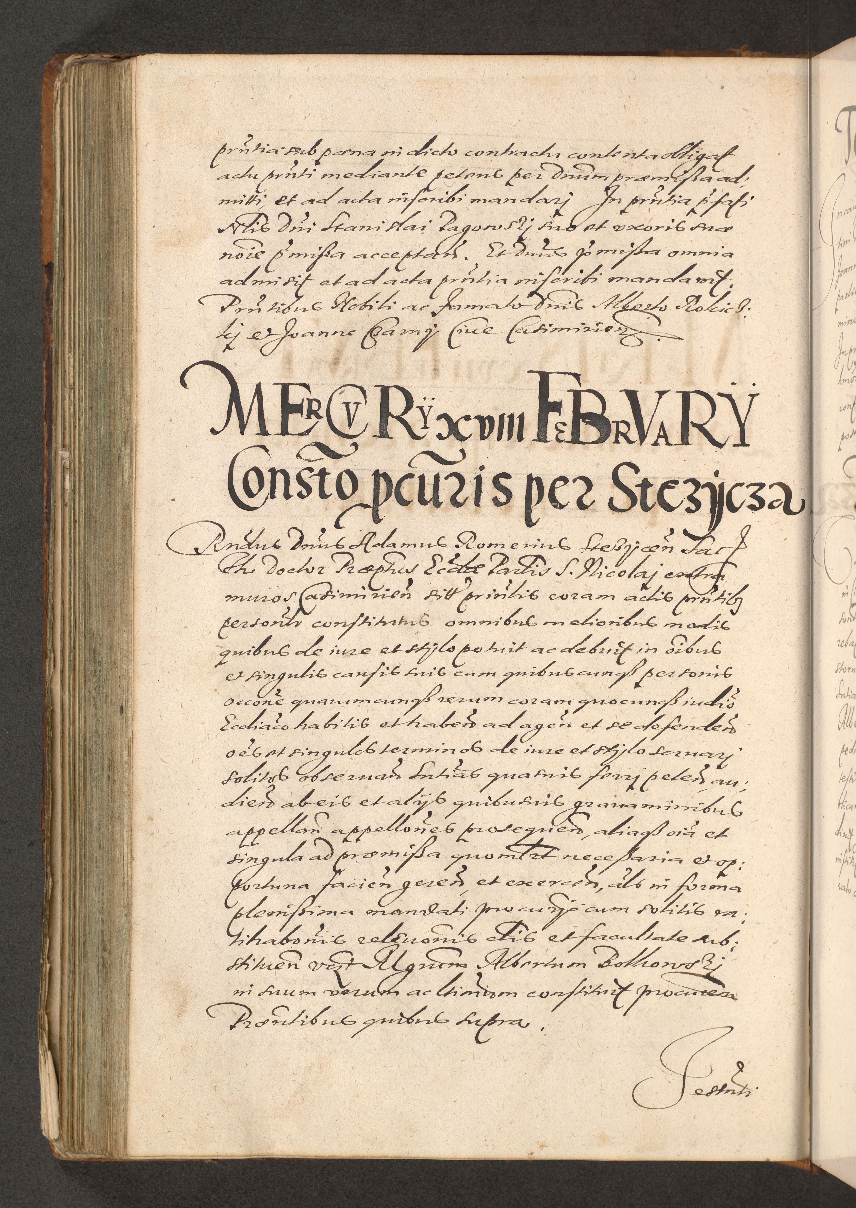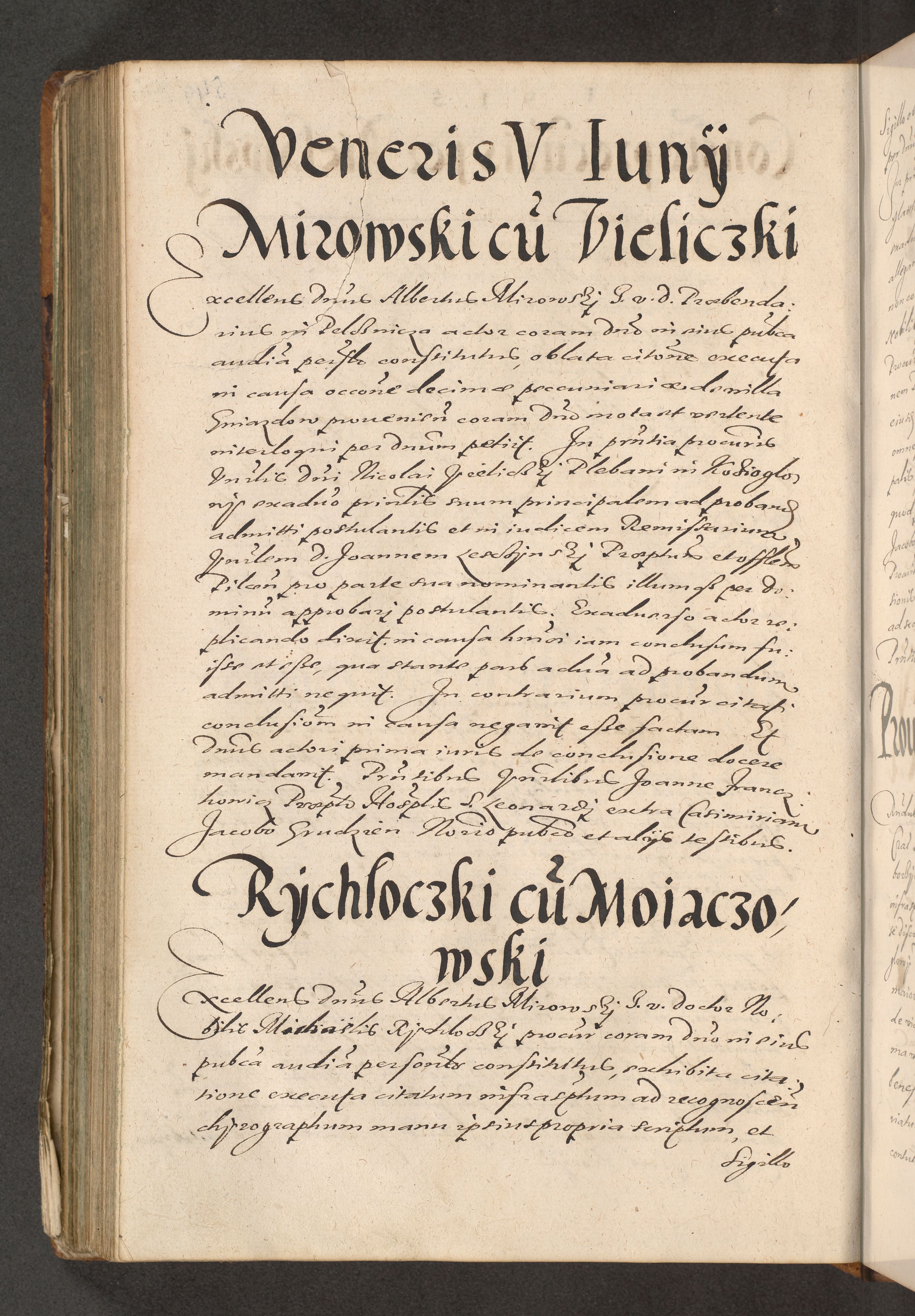 Illustrissimo et Reverendissimo in Christo Patre Domino Domino Petro Tylicki Dei et Apostolice Sedis Gratia Episcopo Cracoviensis Duce Severiensis Acta actorum causarum sententiarum tam interloquutoriarum quam definitivarum decretorum obligationum, quietationum, recognitionum, constitutionum procuratorum etc. etc. coram Admodum Reverendo Domino Thoma Oborski I. V. Doctore Canonico Vicario in Spiritualibus et Officiali generali Cracoviensis in anno Domini Millesimo Sexcentessimo Decimoquarto Cuius Indictio duodecima Pontificus SS. D. N. D. Pauli Divina providentia Papae quinti Anno decimo foeliciter incipiunt