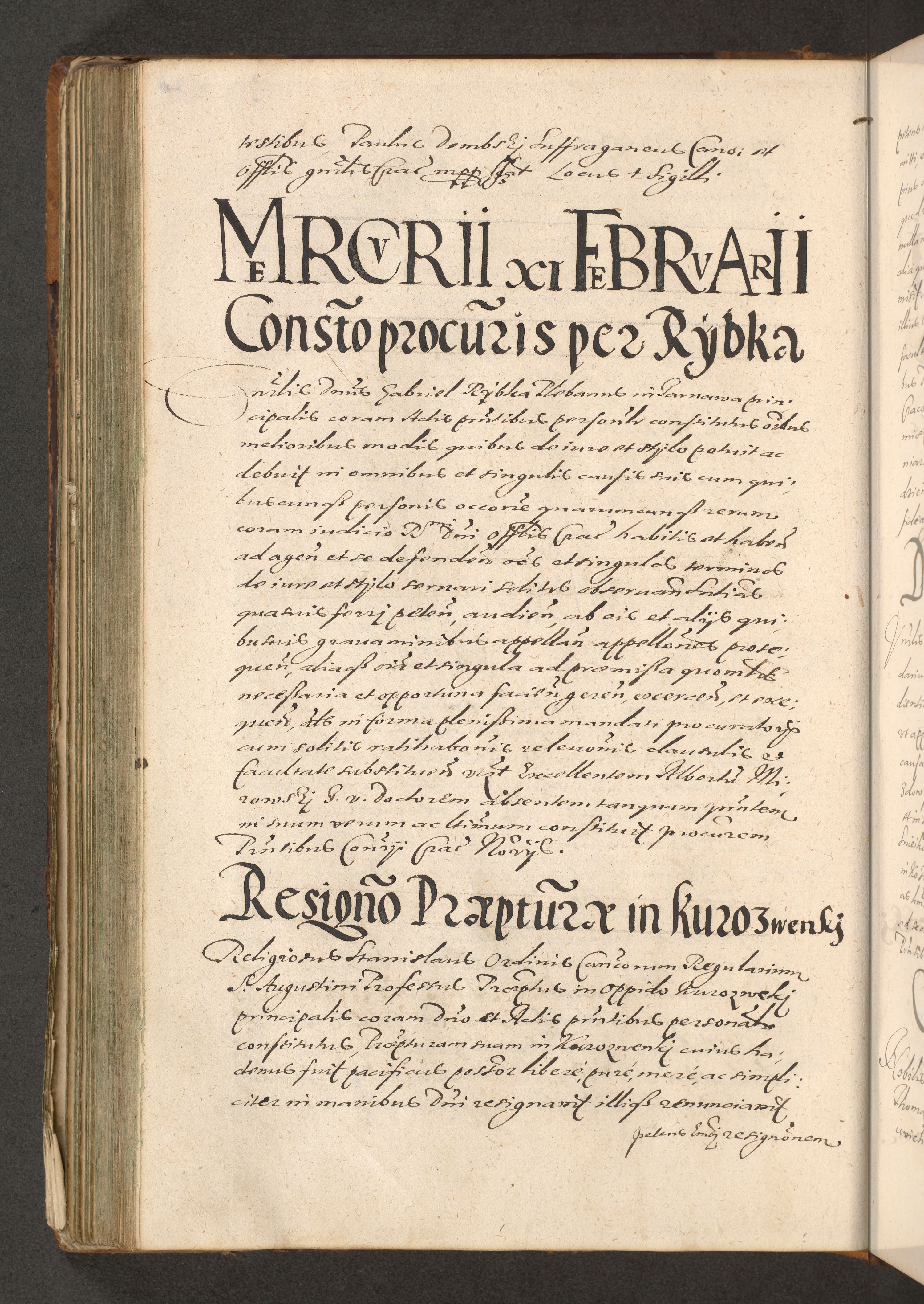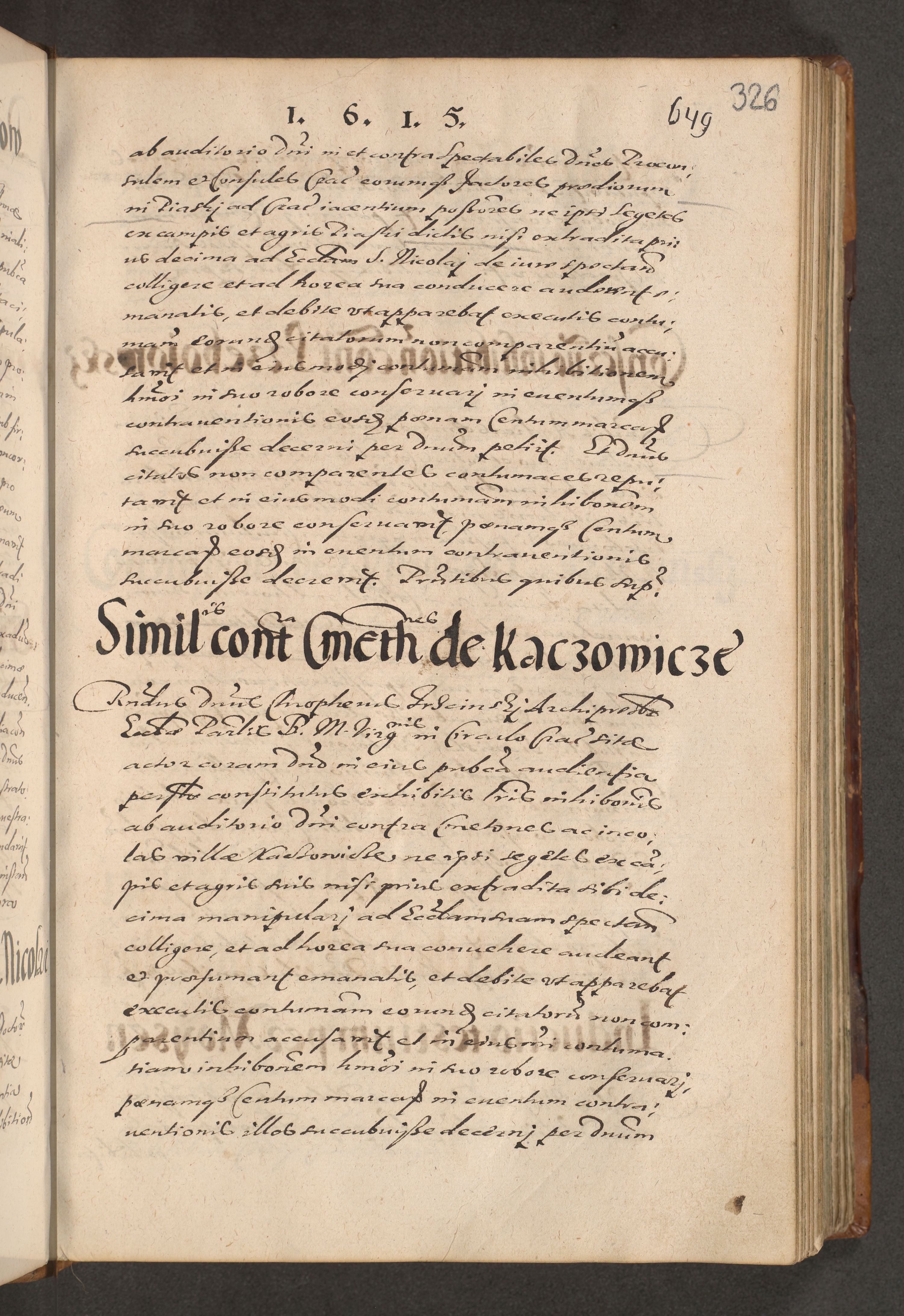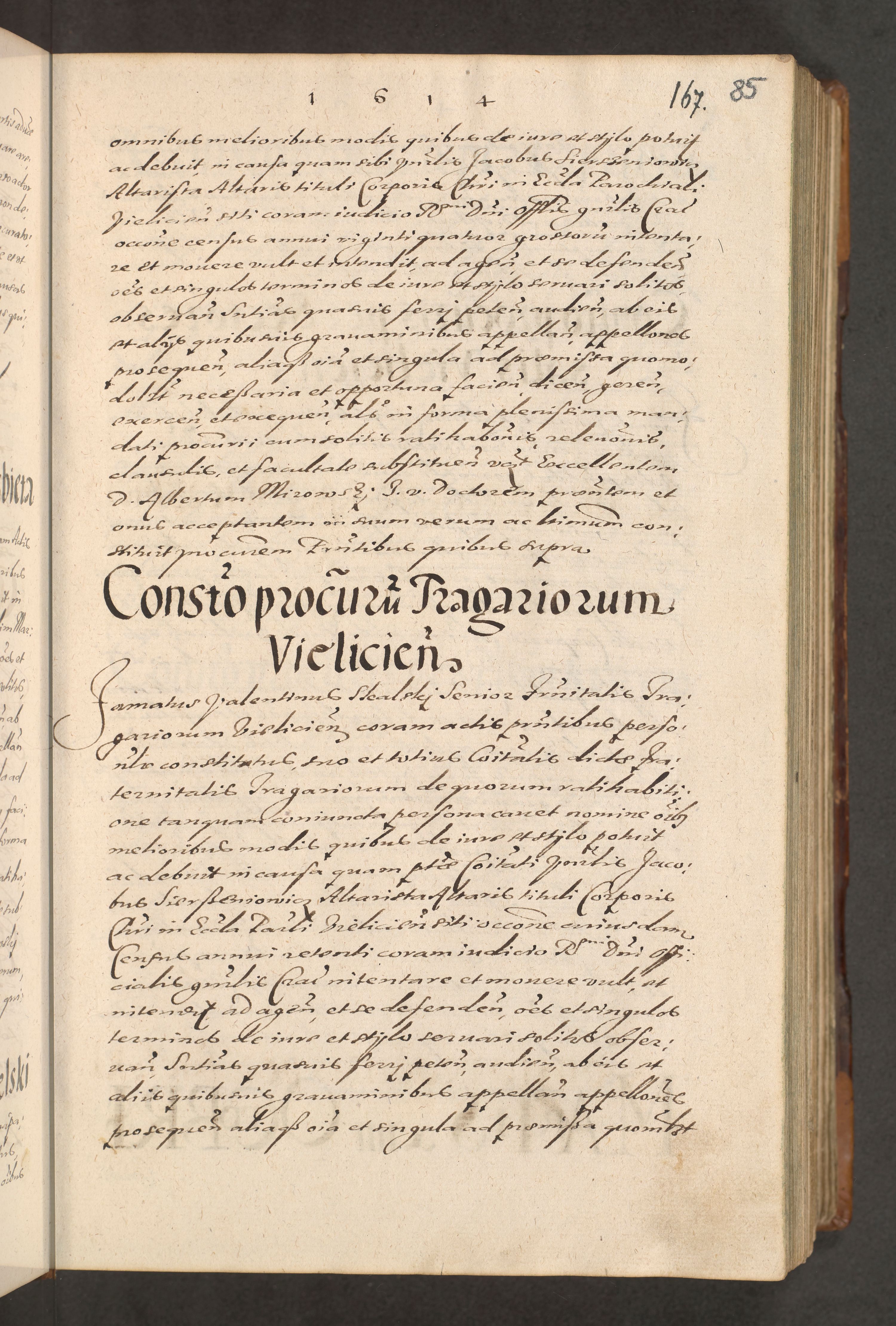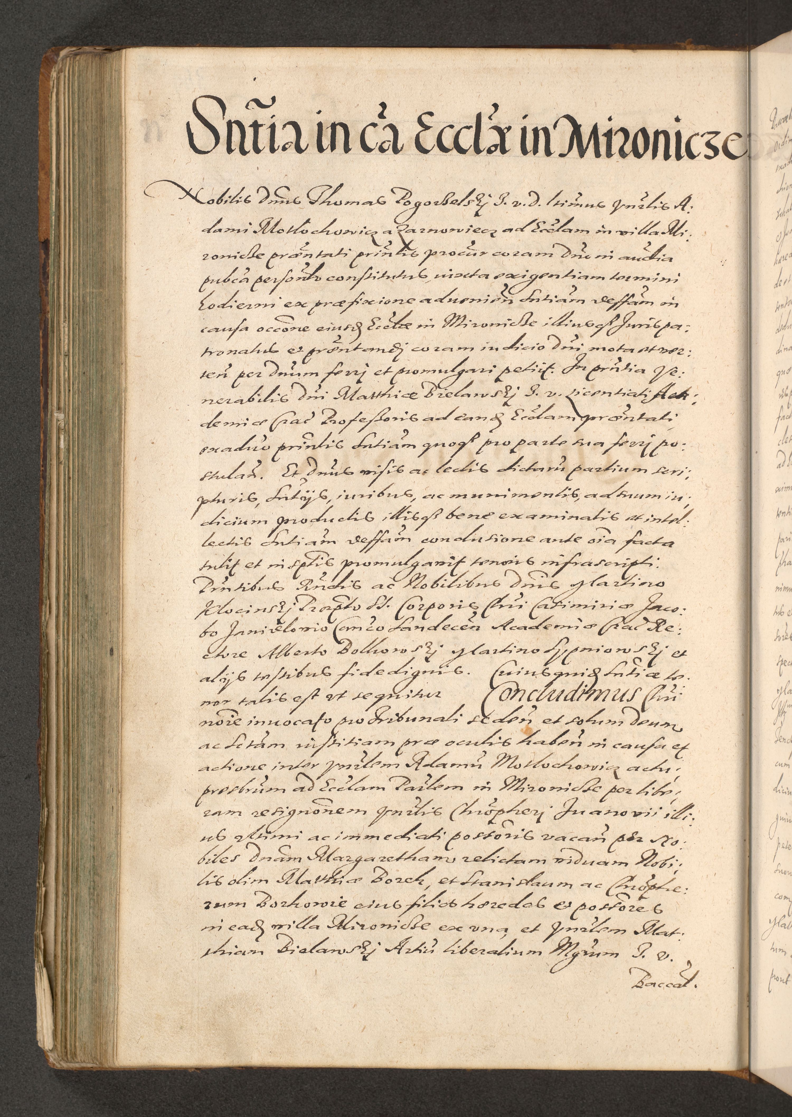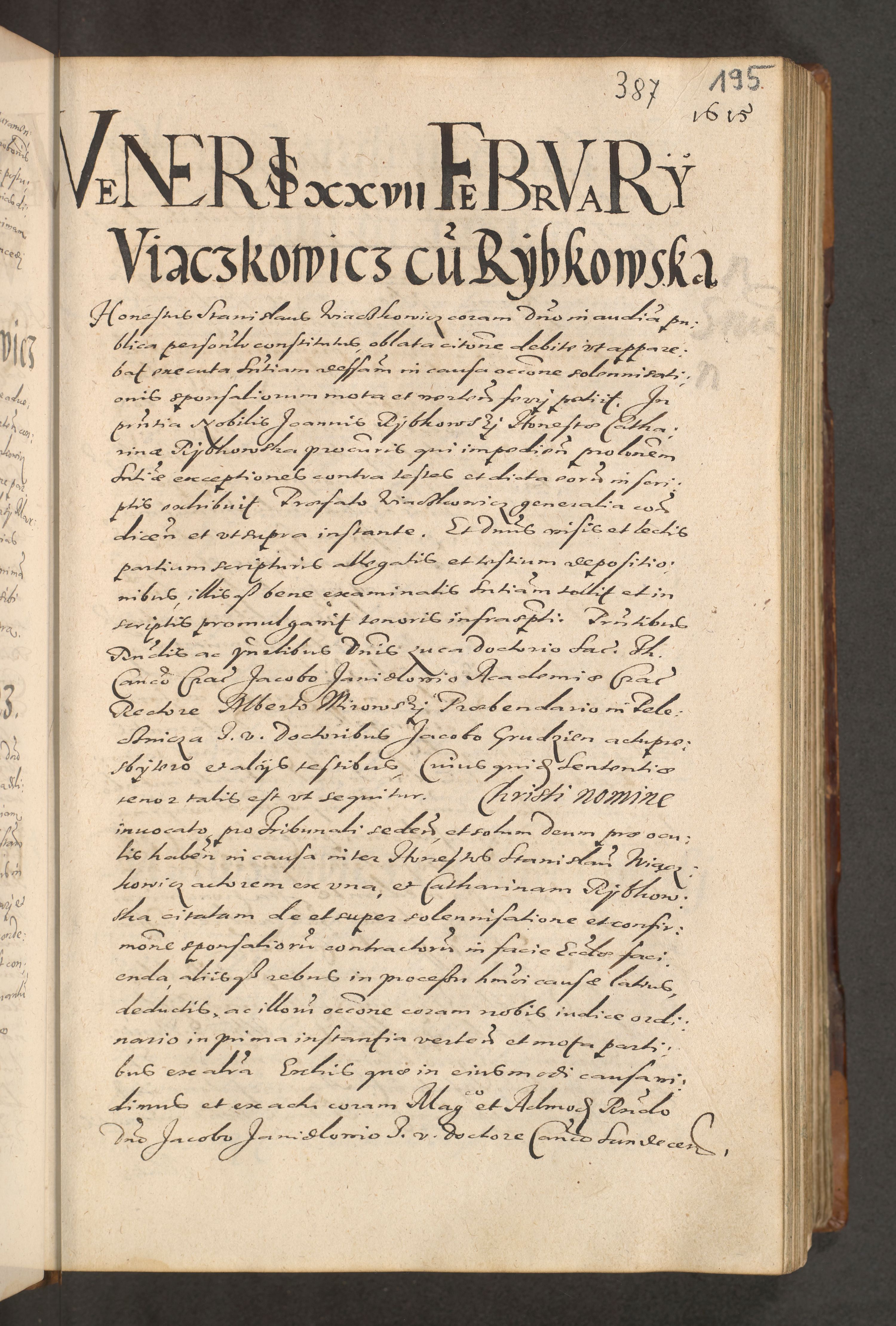 Illustrissimo et Reverendissimo in Christo Patre Domino Domino Petro Tylicki Dei et Apostolice Sedis Gratia Episcopo Cracoviensis Duce Severiensis Acta actorum causarum sententiarum tam interloquutoriarum quam definitivarum decretorum obligationum, quietationum, recognitionum, constitutionum procuratorum etc. etc. coram Admodum Reverendo Domino Thoma Oborski I. V. Doctore Canonico Vicario in Spiritualibus et Officiali generali Cracoviensis in anno Domini Millesimo Sexcentessimo Decimoquarto Cuius Indictio duodecima Pontificus SS. D. N. D. Pauli Divina providentia Papae quinti Anno decimo foeliciter incipiunt