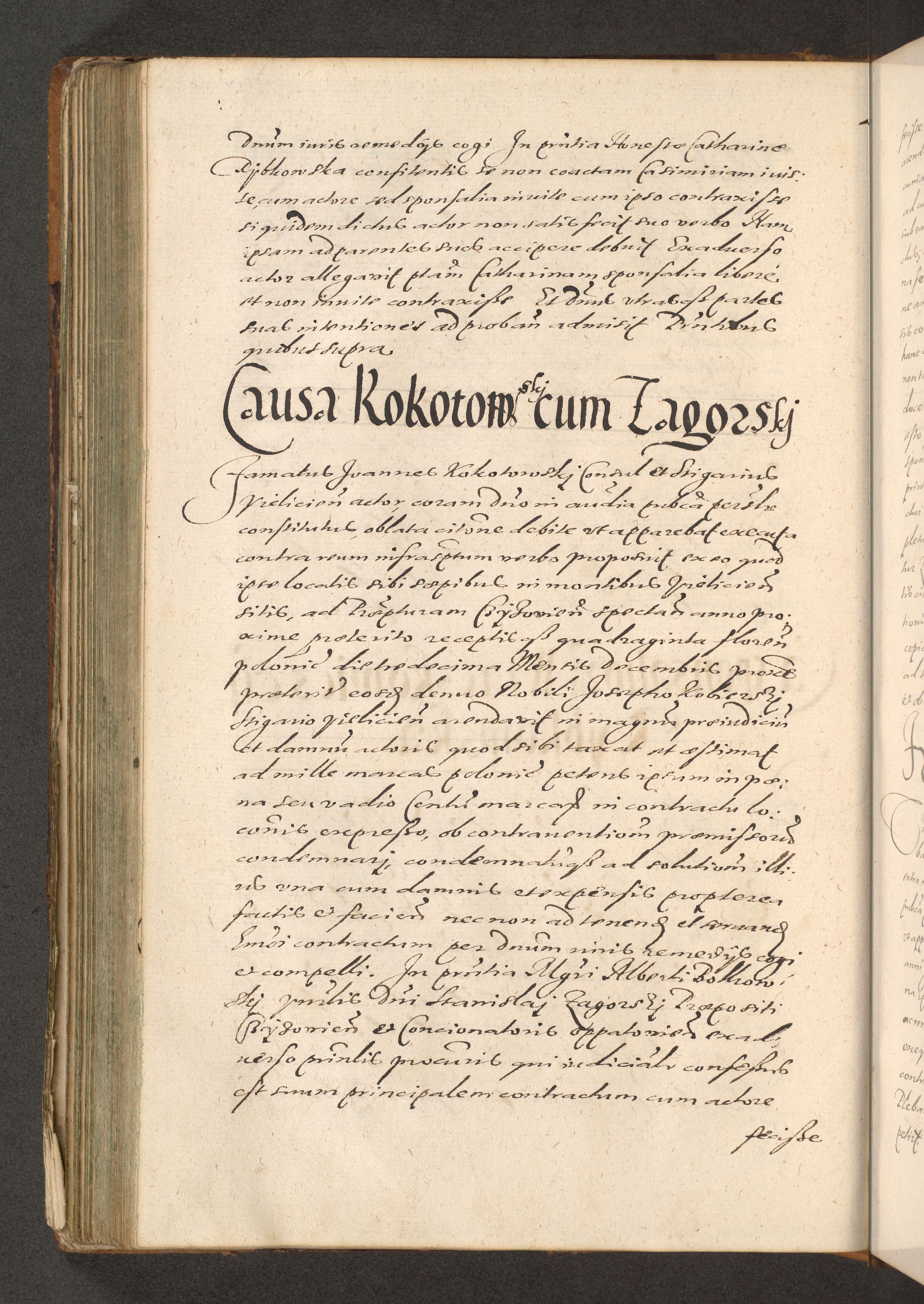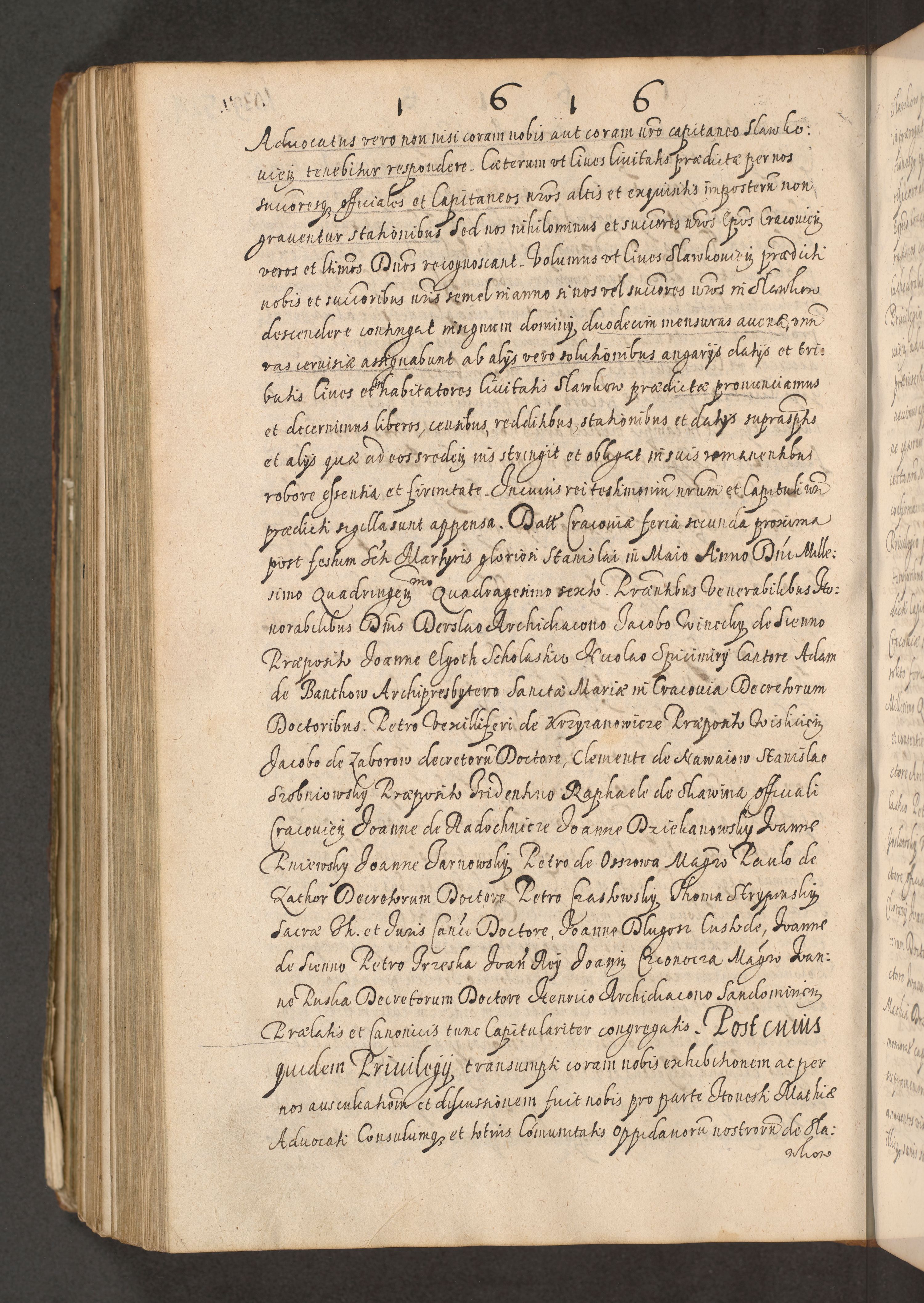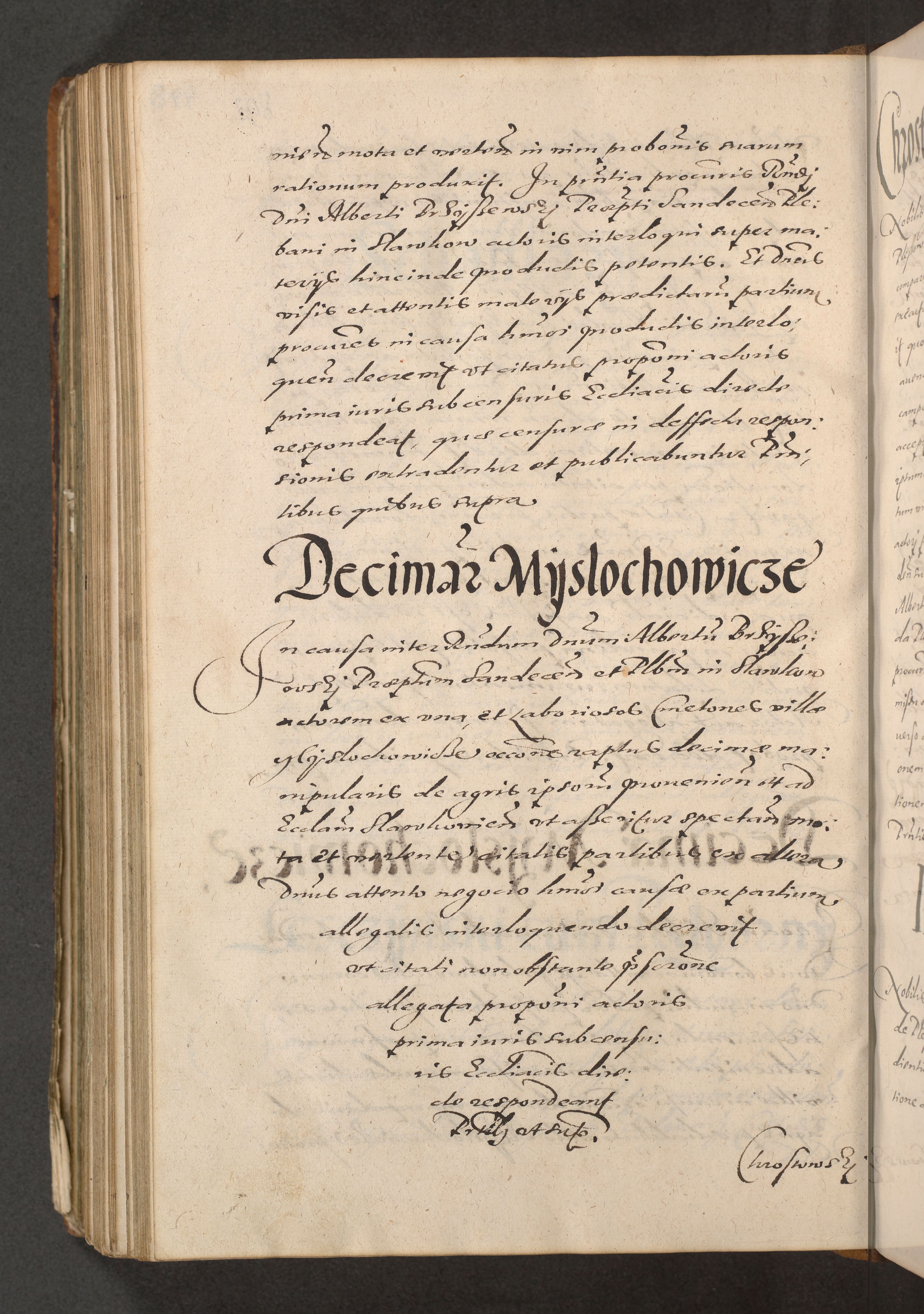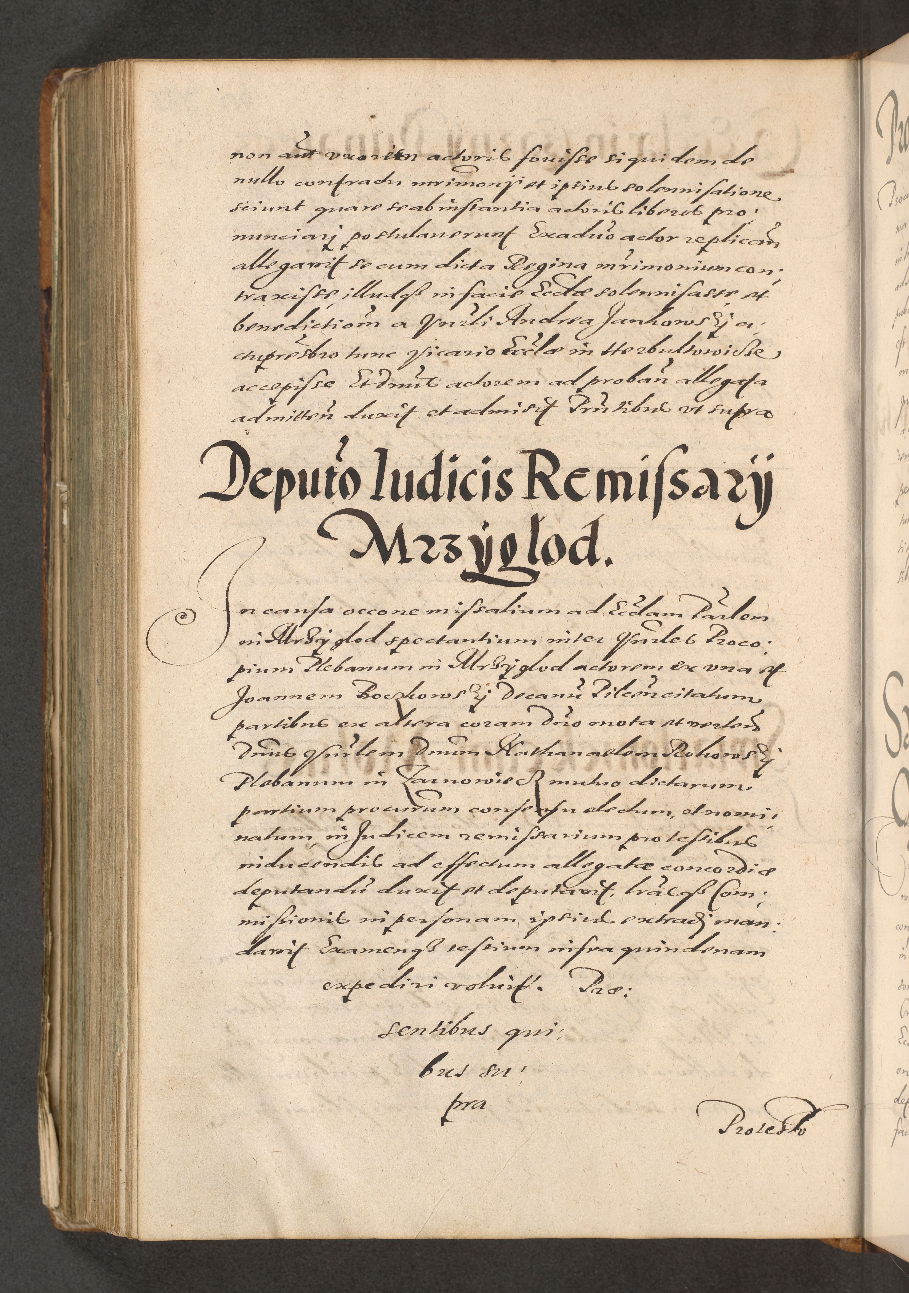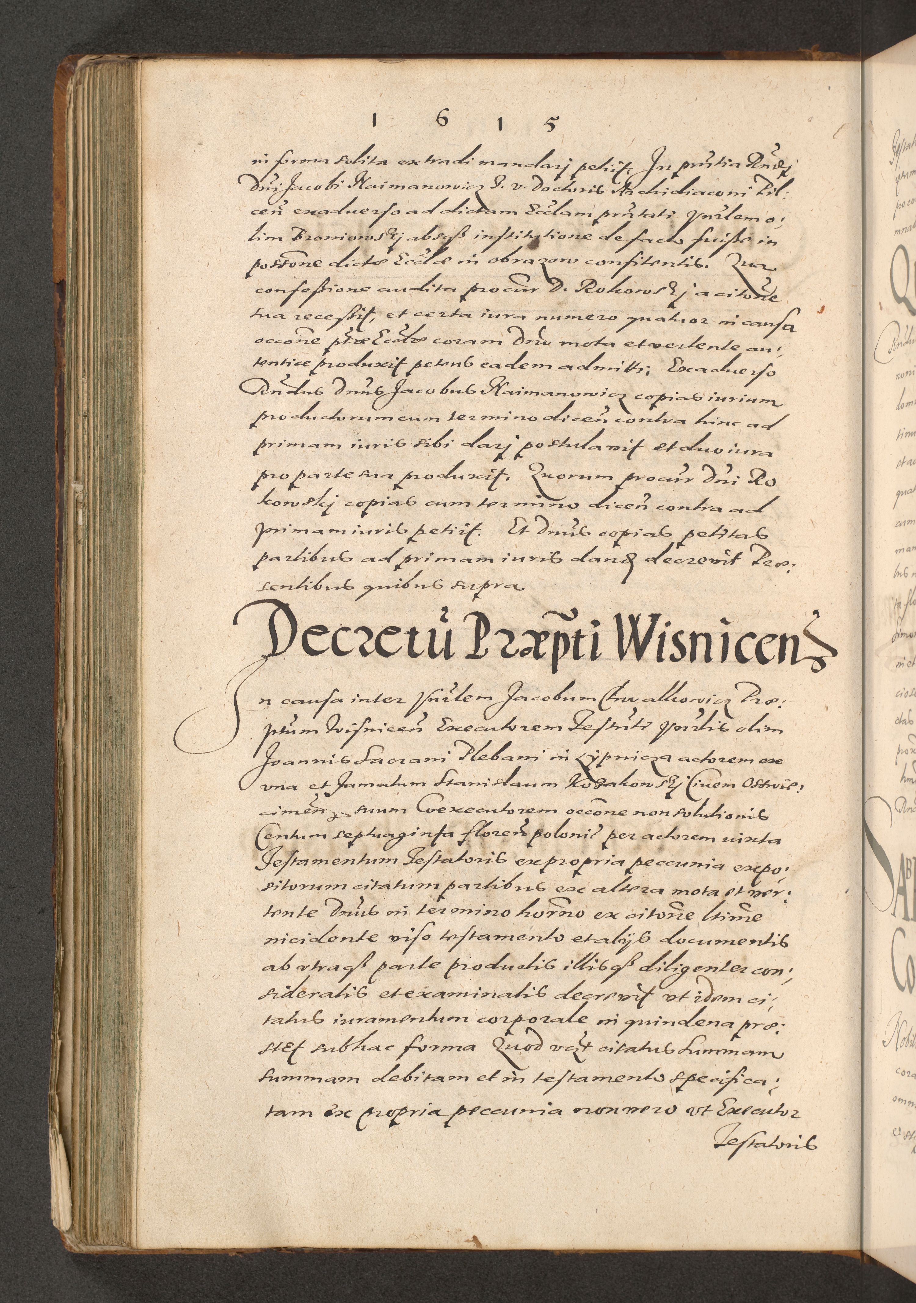 Illustrissimo et Reverendissimo in Christo Patre Domino Domino Petro Tylicki Dei et Apostolice Sedis Gratia Episcopo Cracoviensis Duce Severiensis Acta actorum causarum sententiarum tam interloquutoriarum quam definitivarum decretorum obligationum, quietationum, recognitionum, constitutionum procuratorum etc. etc. coram Admodum Reverendo Domino Thoma Oborski I. V. Doctore Canonico Vicario in Spiritualibus et Officiali generali Cracoviensis in anno Domini Millesimo Sexcentessimo Decimoquarto Cuius Indictio duodecima Pontificus SS. D. N. D. Pauli Divina providentia Papae quinti Anno decimo foeliciter incipiunt
