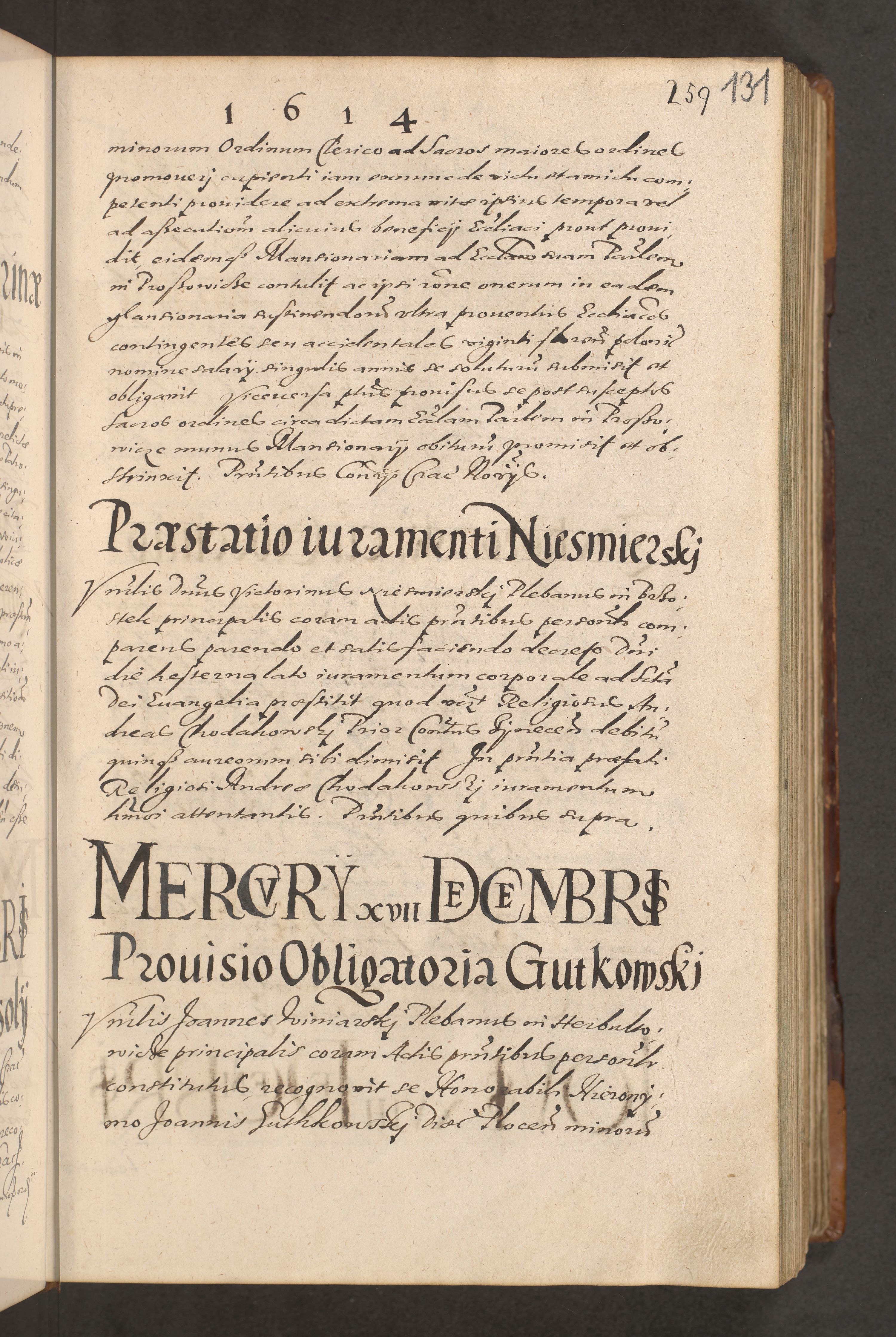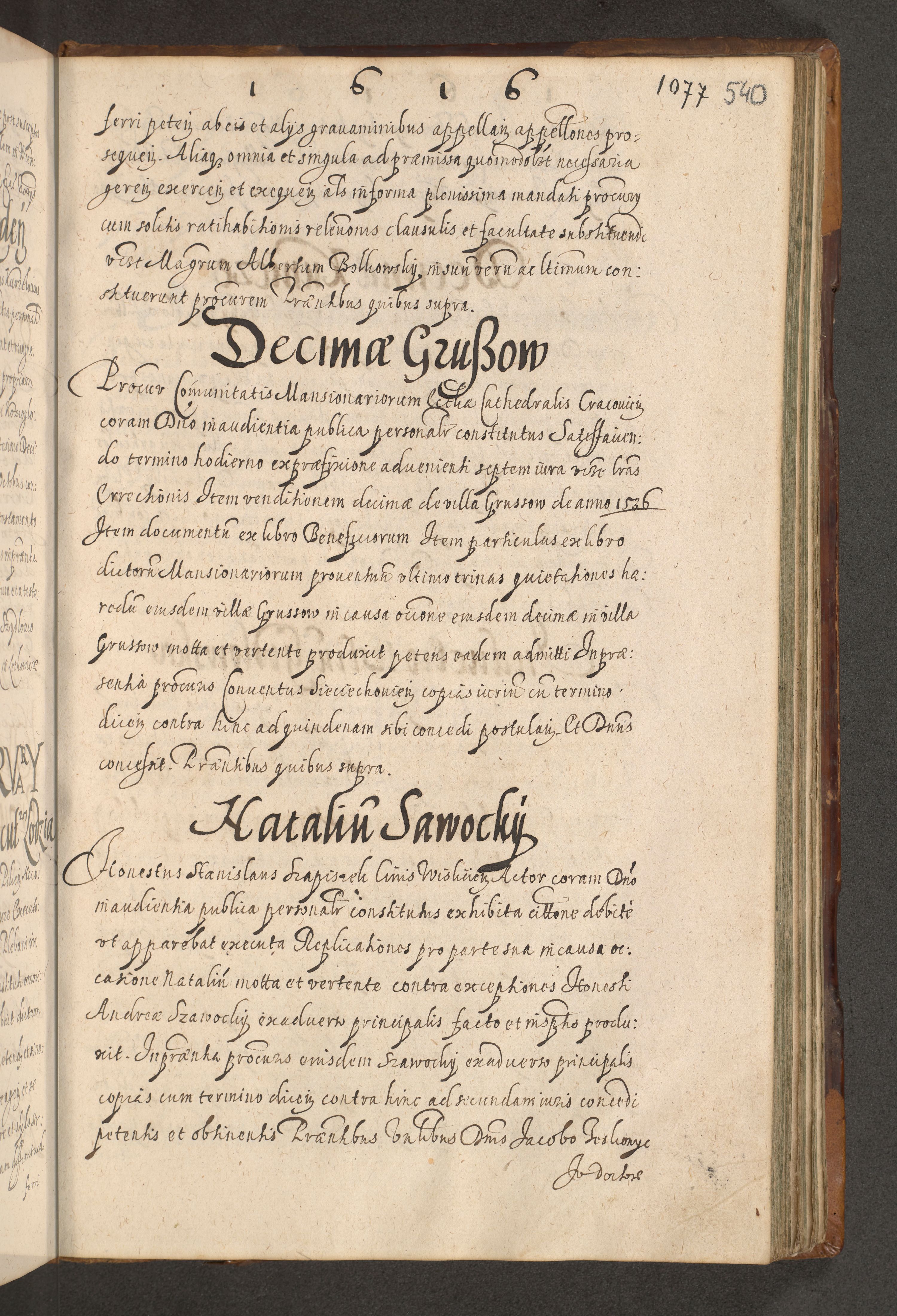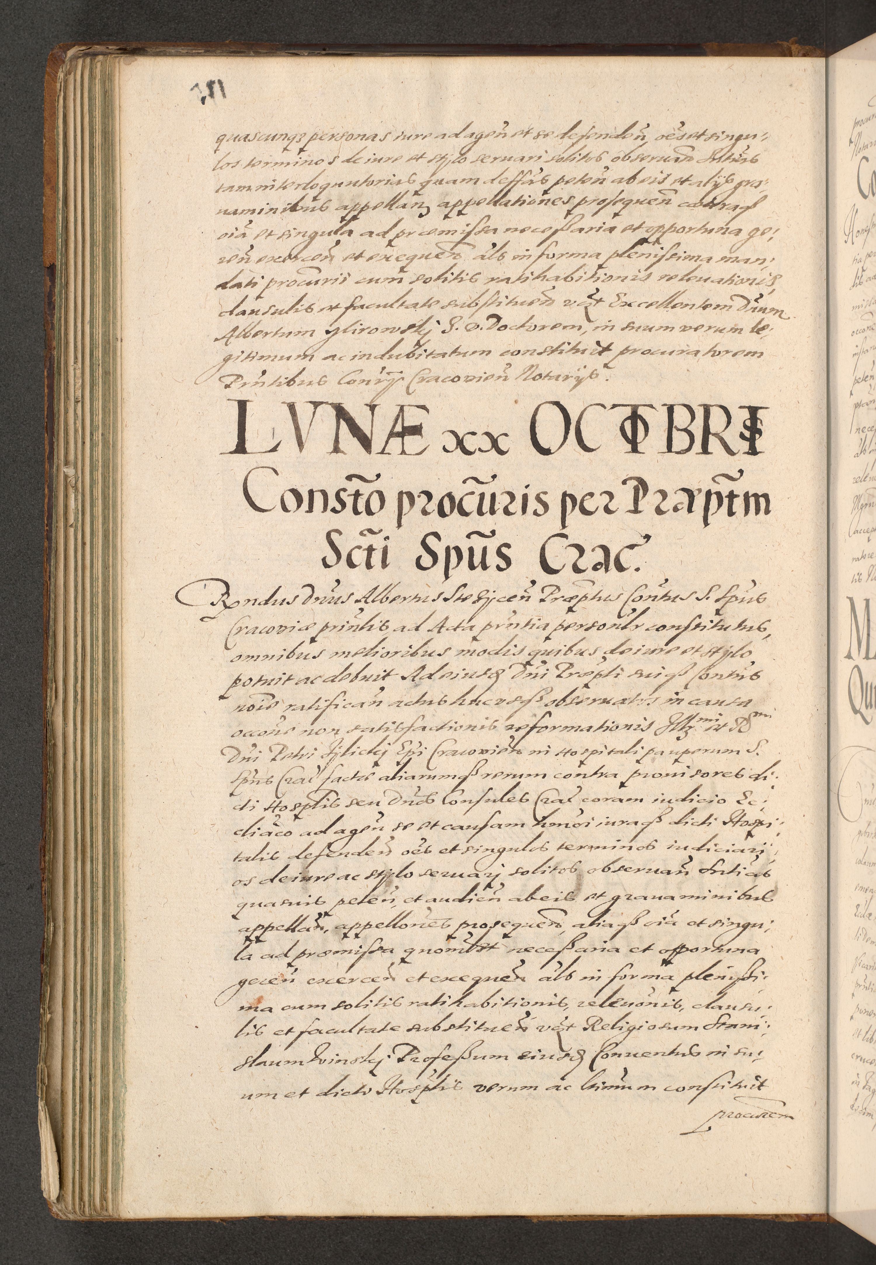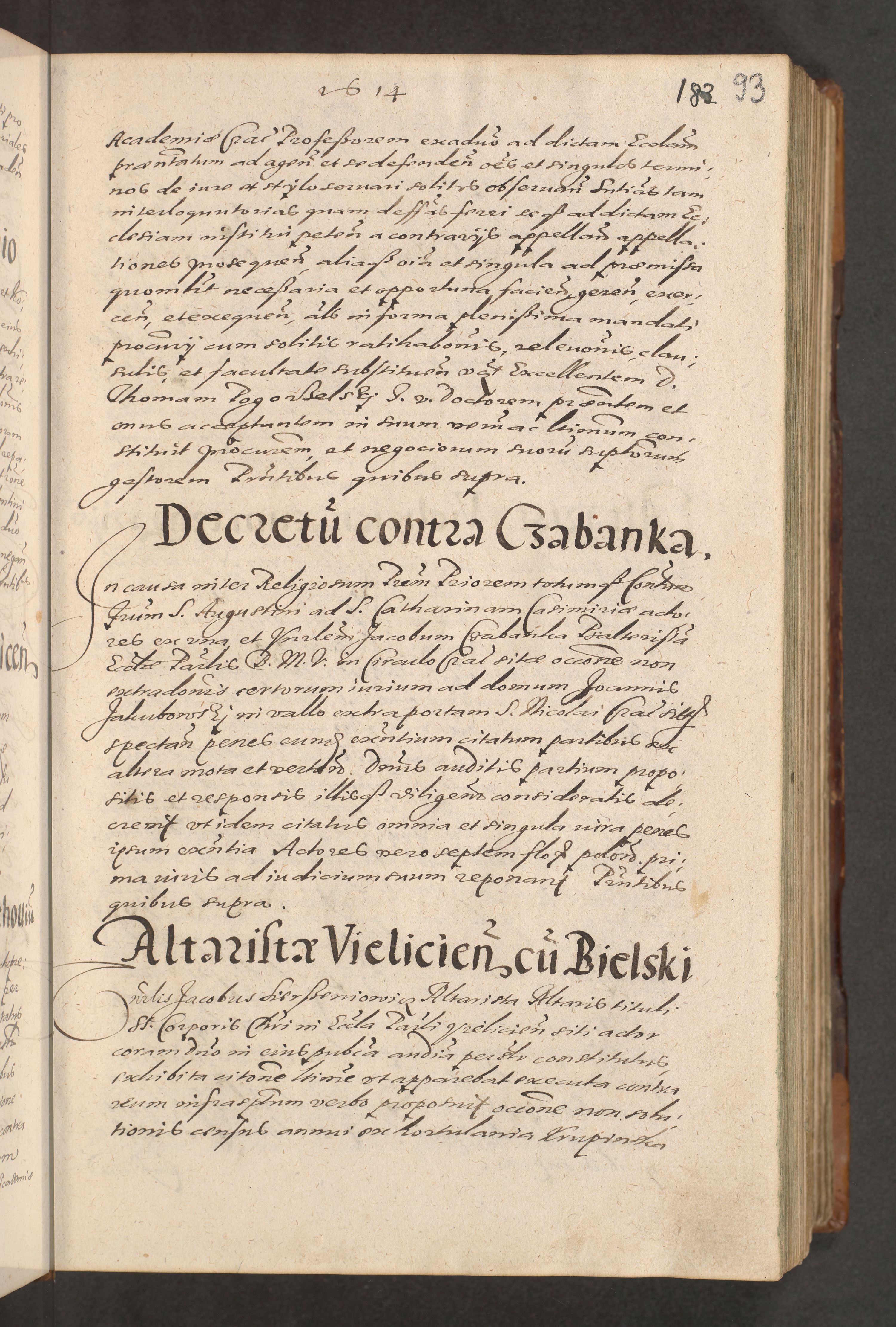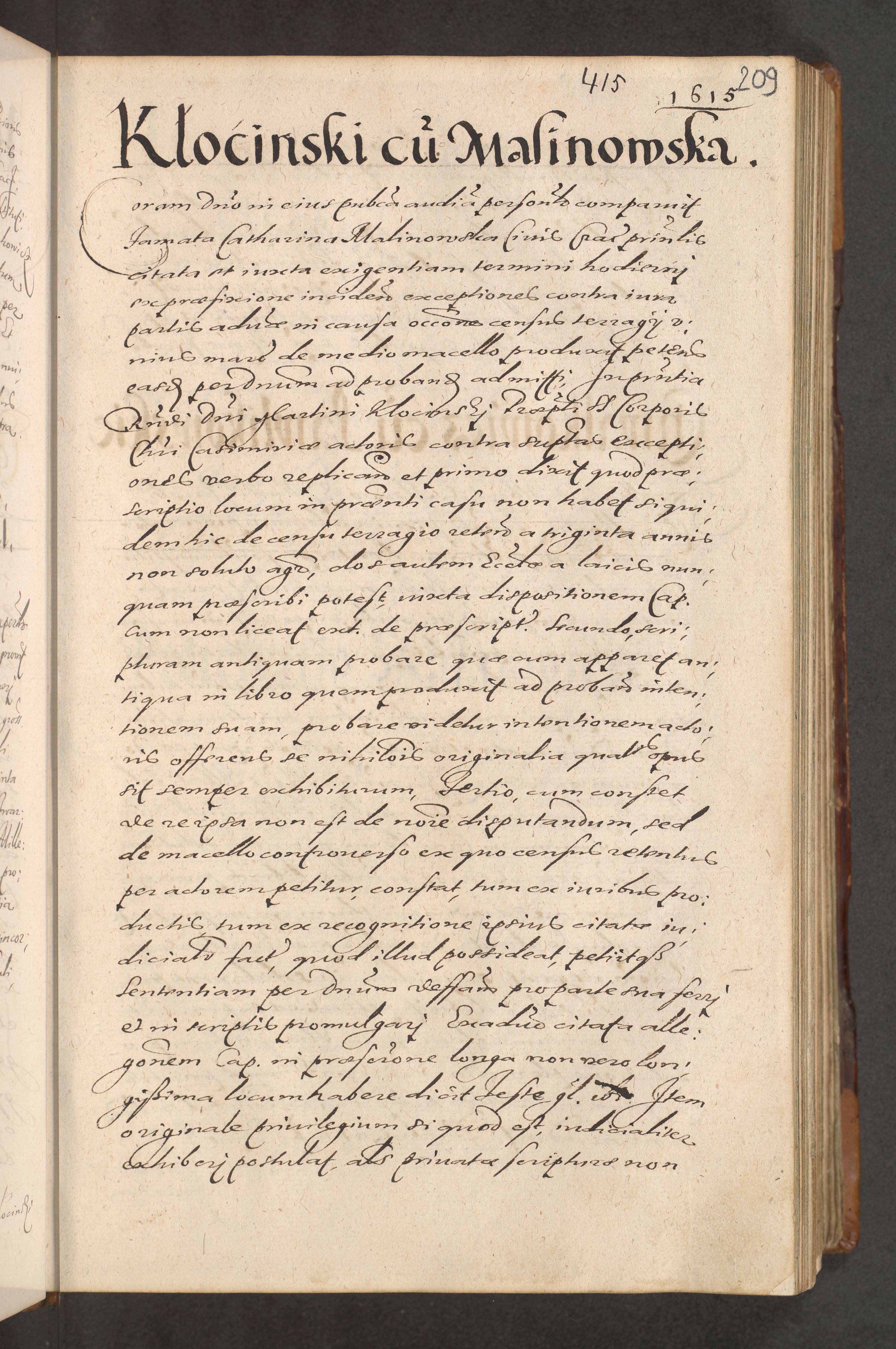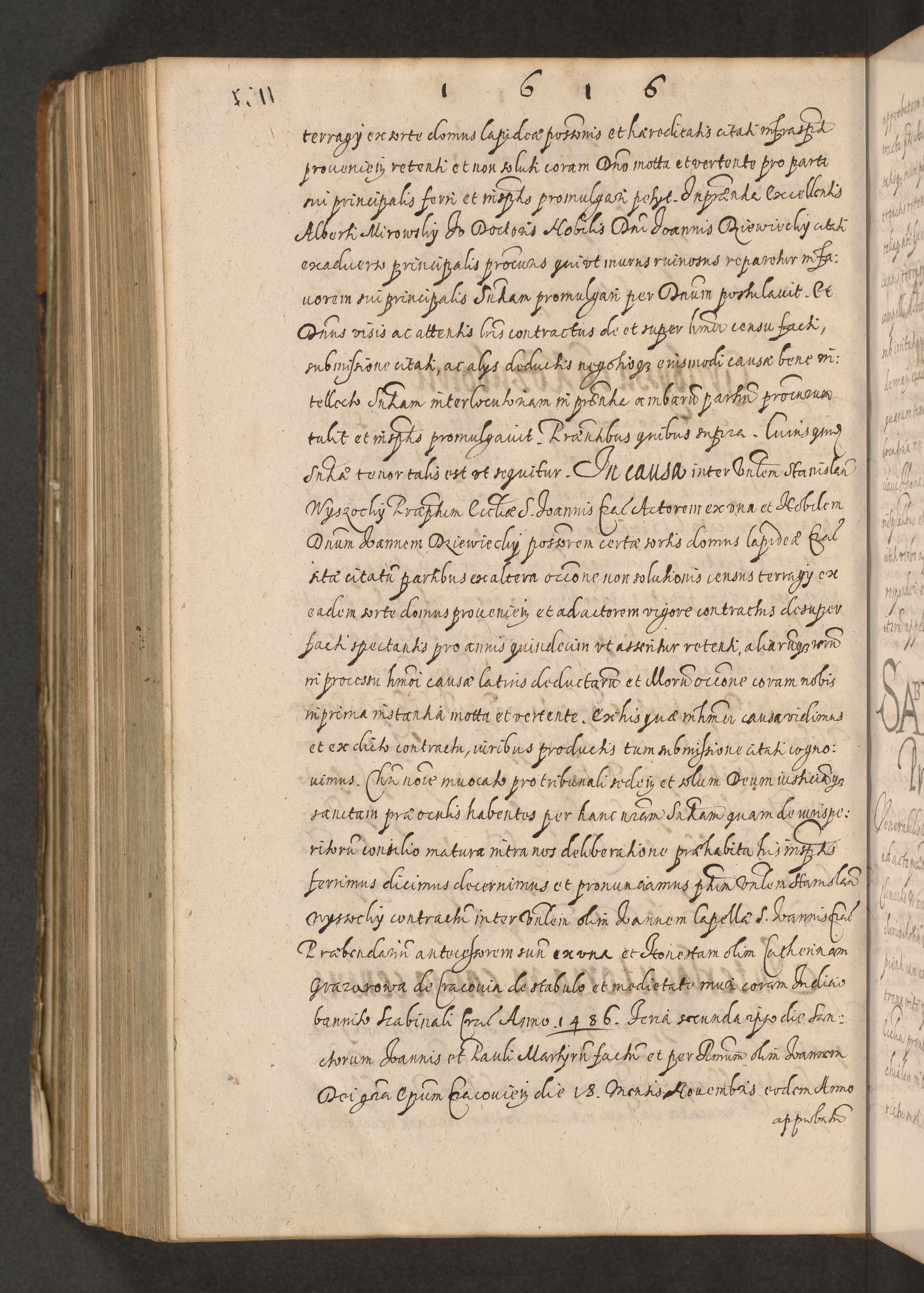 Illustrissimo et Reverendissimo in Christo Patre Domino Domino Petro Tylicki Dei et Apostolice Sedis Gratia Episcopo Cracoviensis Duce Severiensis Acta actorum causarum sententiarum tam interloquutoriarum quam definitivarum decretorum obligationum, quietationum, recognitionum, constitutionum procuratorum etc. etc. coram Admodum Reverendo Domino Thoma Oborski I. V. Doctore Canonico Vicario in Spiritualibus et Officiali generali Cracoviensis in anno Domini Millesimo Sexcentessimo Decimoquarto Cuius Indictio duodecima Pontificus SS. D. N. D. Pauli Divina providentia Papae quinti Anno decimo foeliciter incipiunt