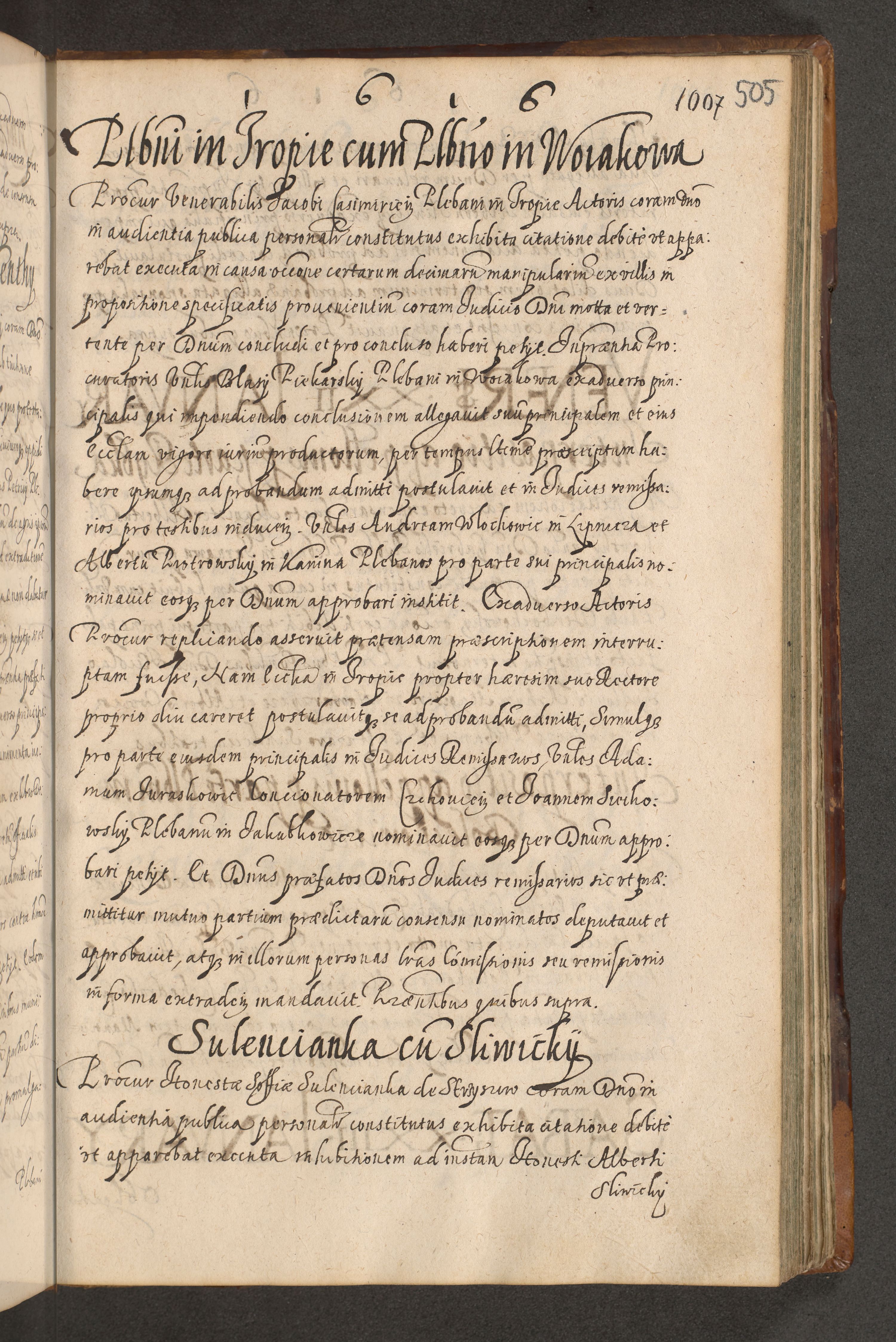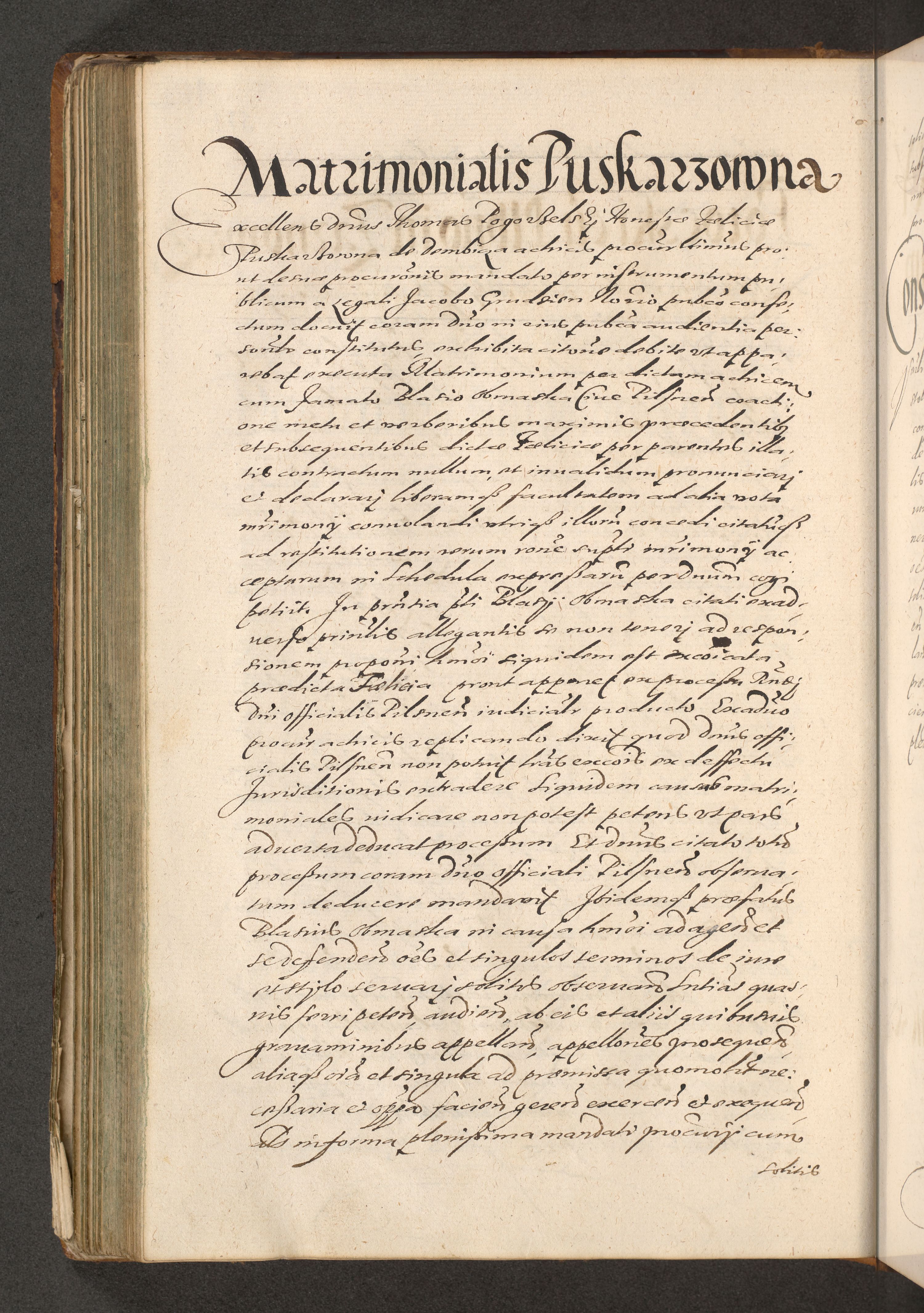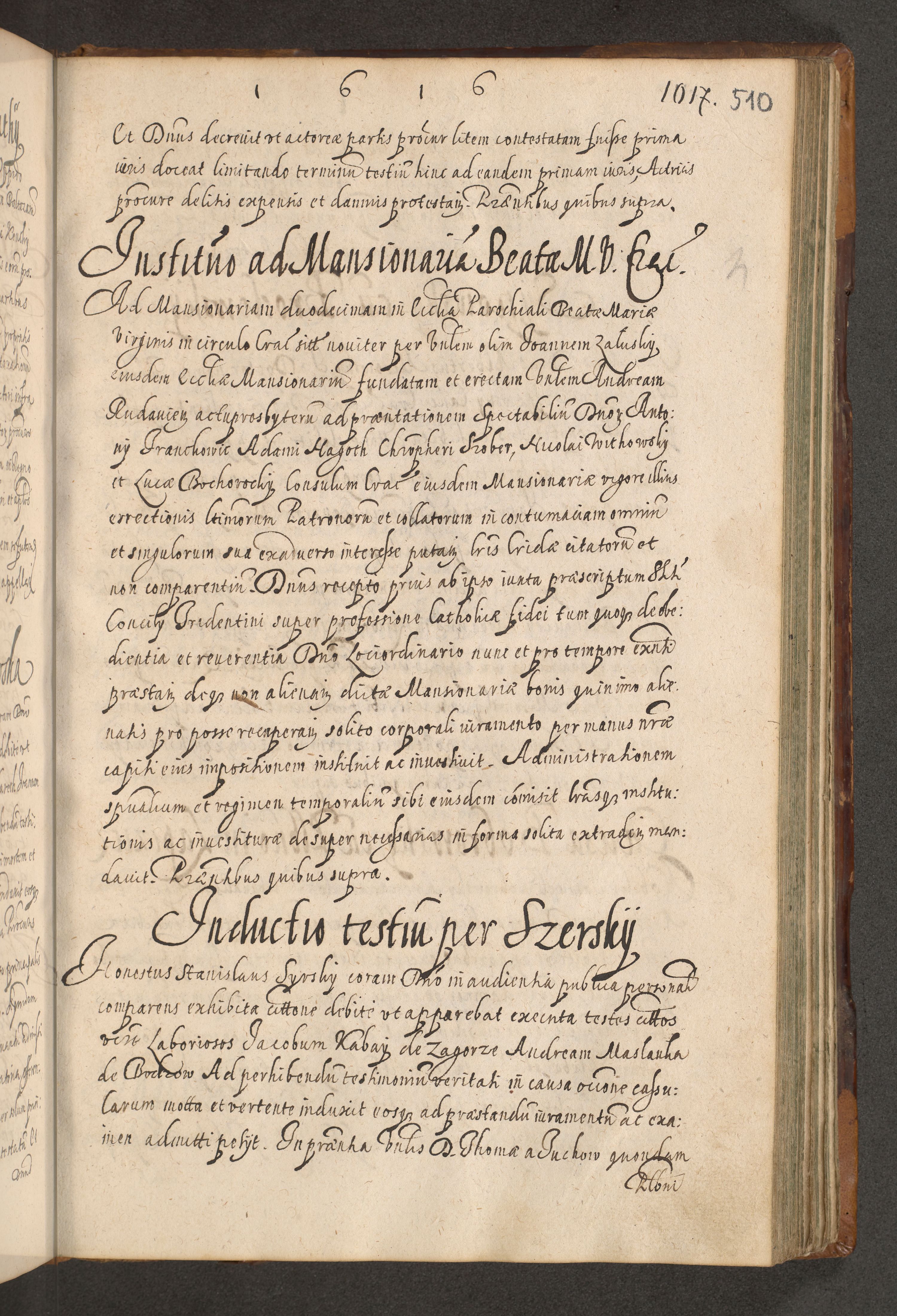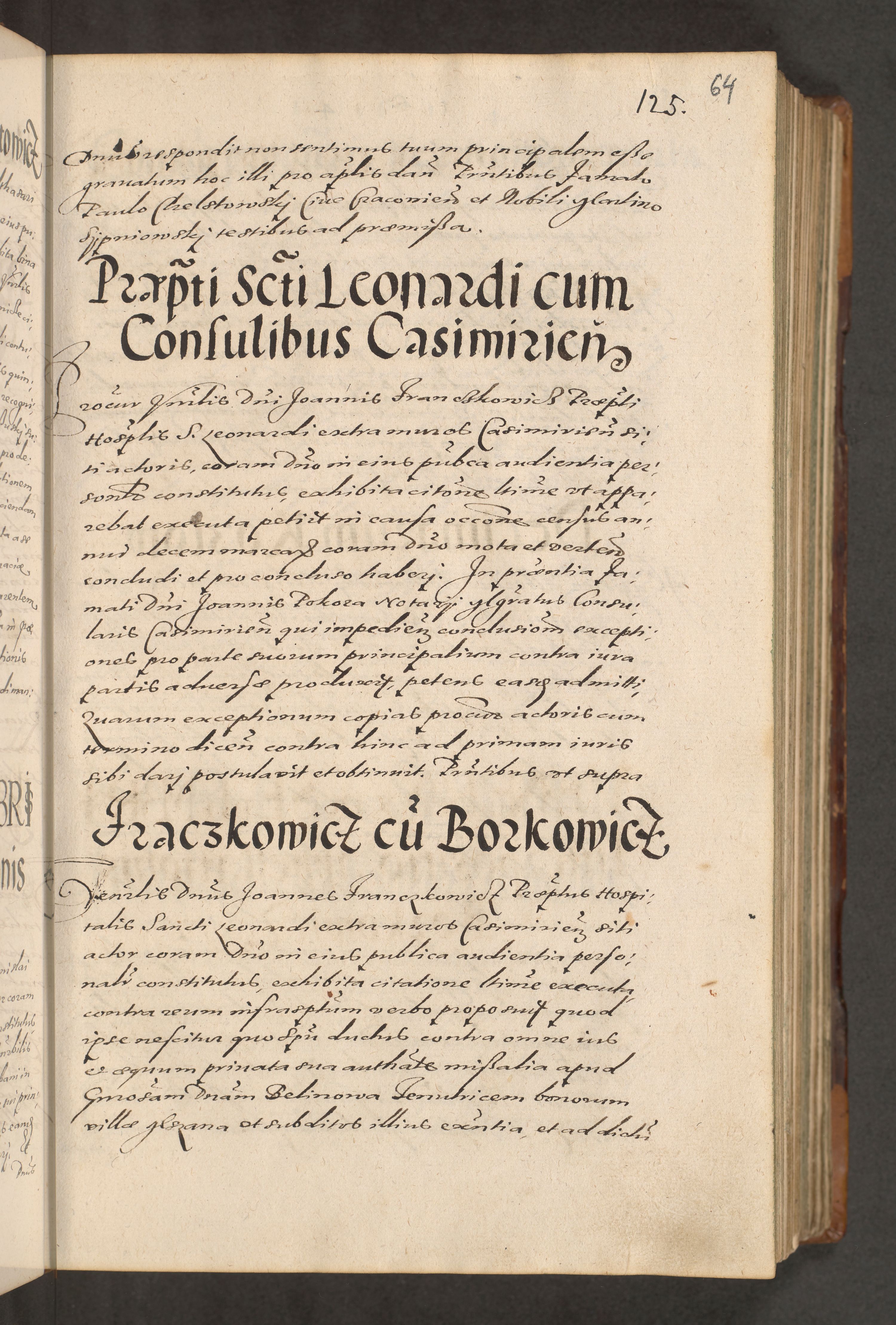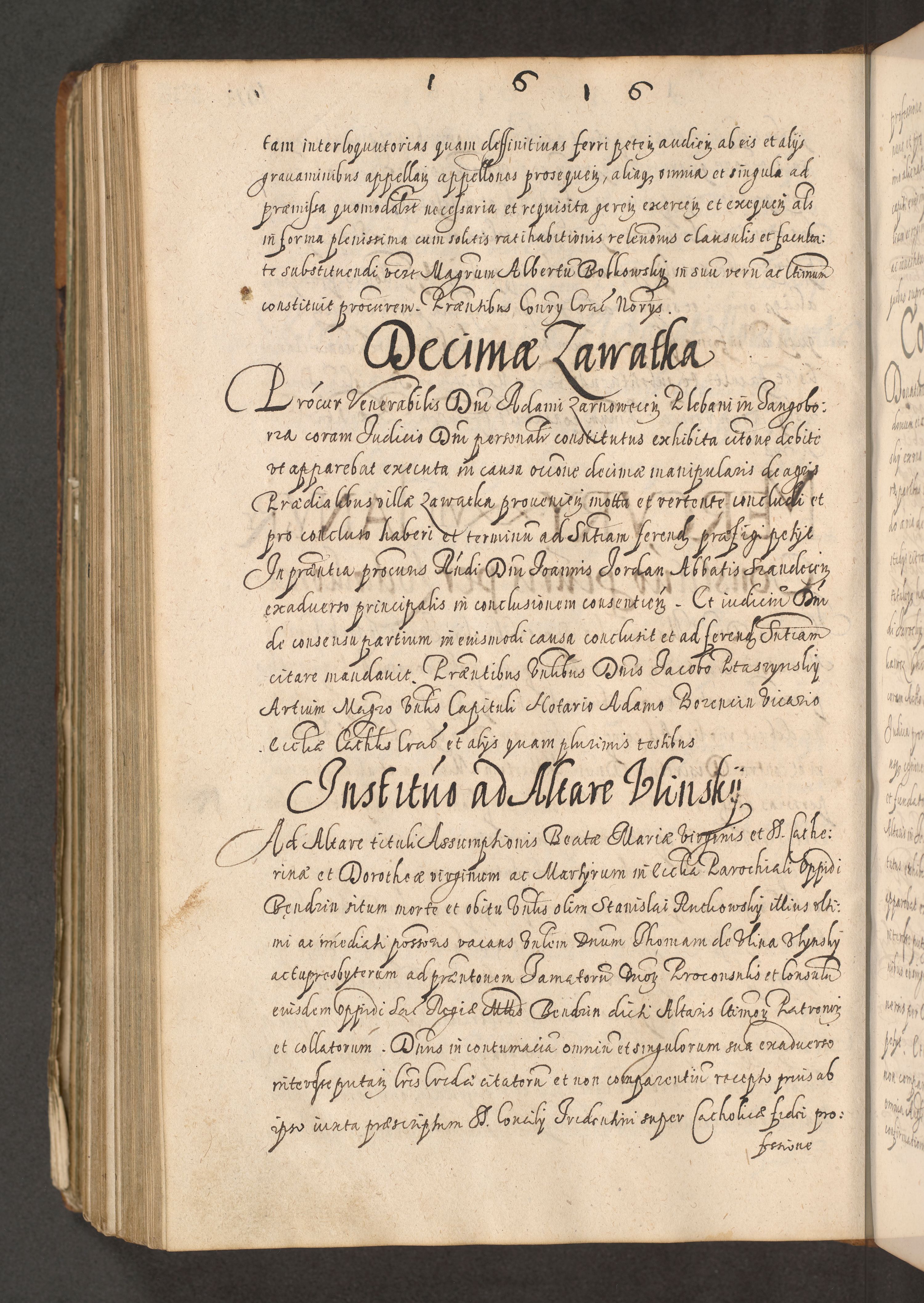 Illustrissimo et Reverendissimo in Christo Patre Domino Domino Petro Tylicki Dei et Apostolice Sedis Gratia Episcopo Cracoviensis Duce Severiensis Acta actorum causarum sententiarum tam interloquutoriarum quam definitivarum decretorum obligationum, quietationum, recognitionum, constitutionum procuratorum etc. etc. coram Admodum Reverendo Domino Thoma Oborski I. V. Doctore Canonico Vicario in Spiritualibus et Officiali generali Cracoviensis in anno Domini Millesimo Sexcentessimo Decimoquarto Cuius Indictio duodecima Pontificus SS. D. N. D. Pauli Divina providentia Papae quinti Anno decimo foeliciter incipiunt