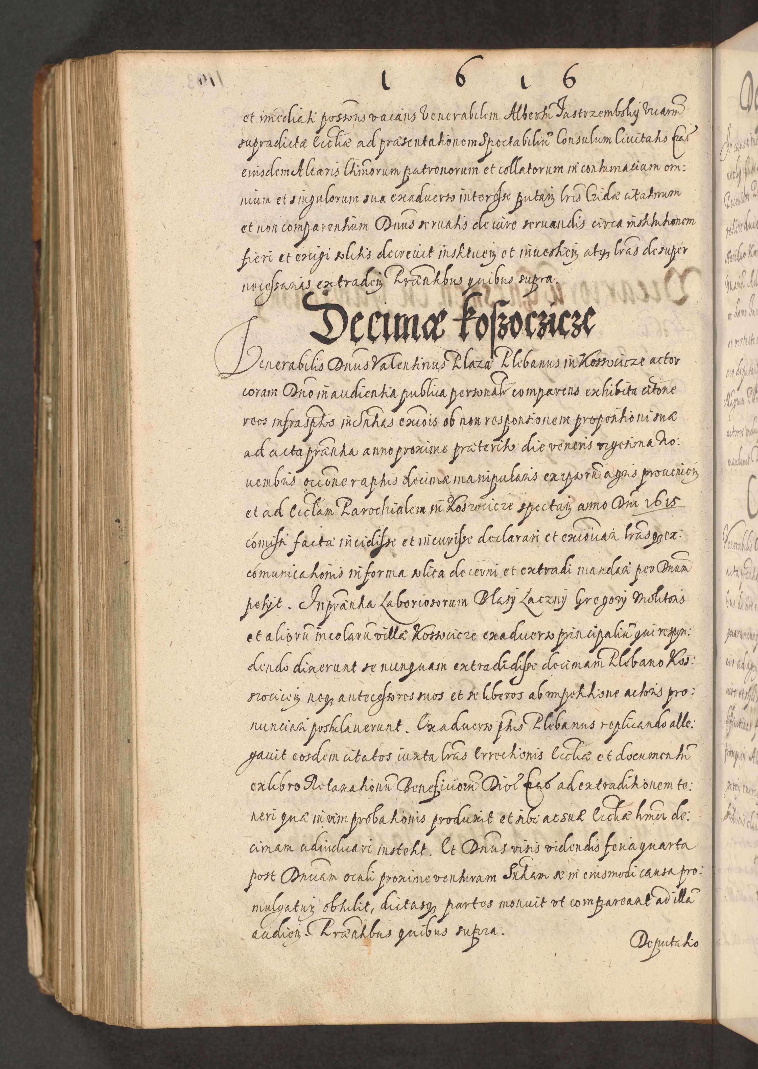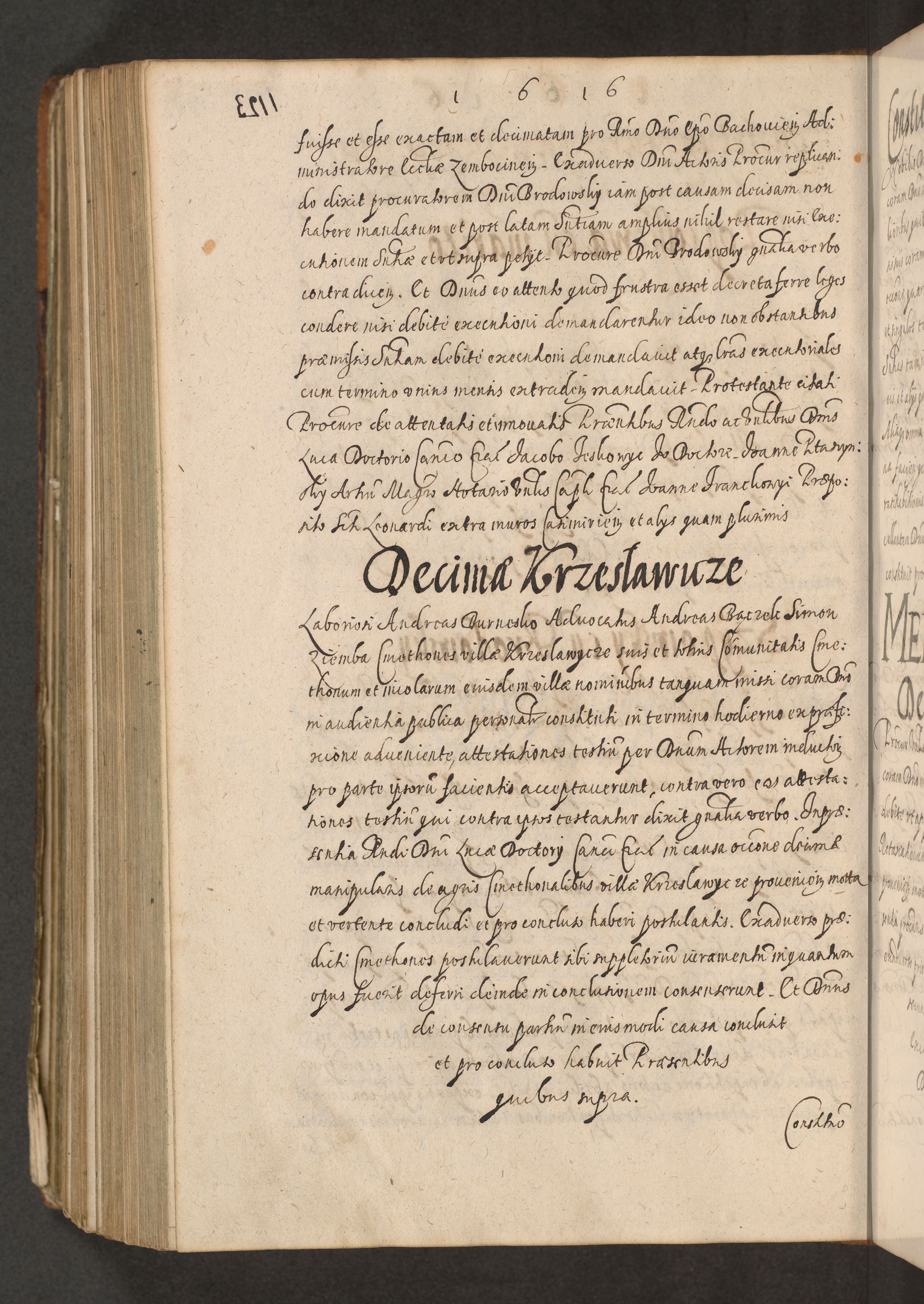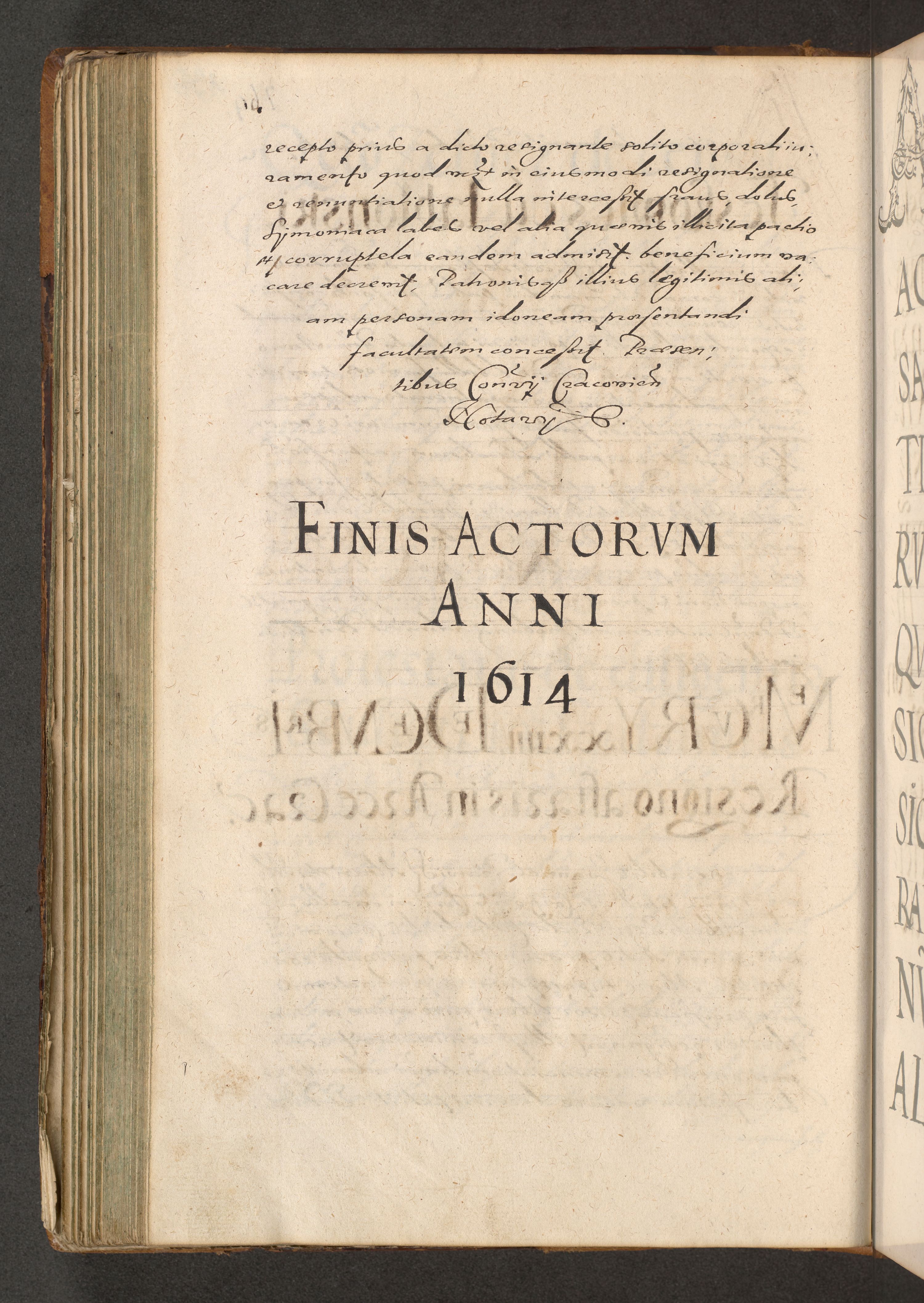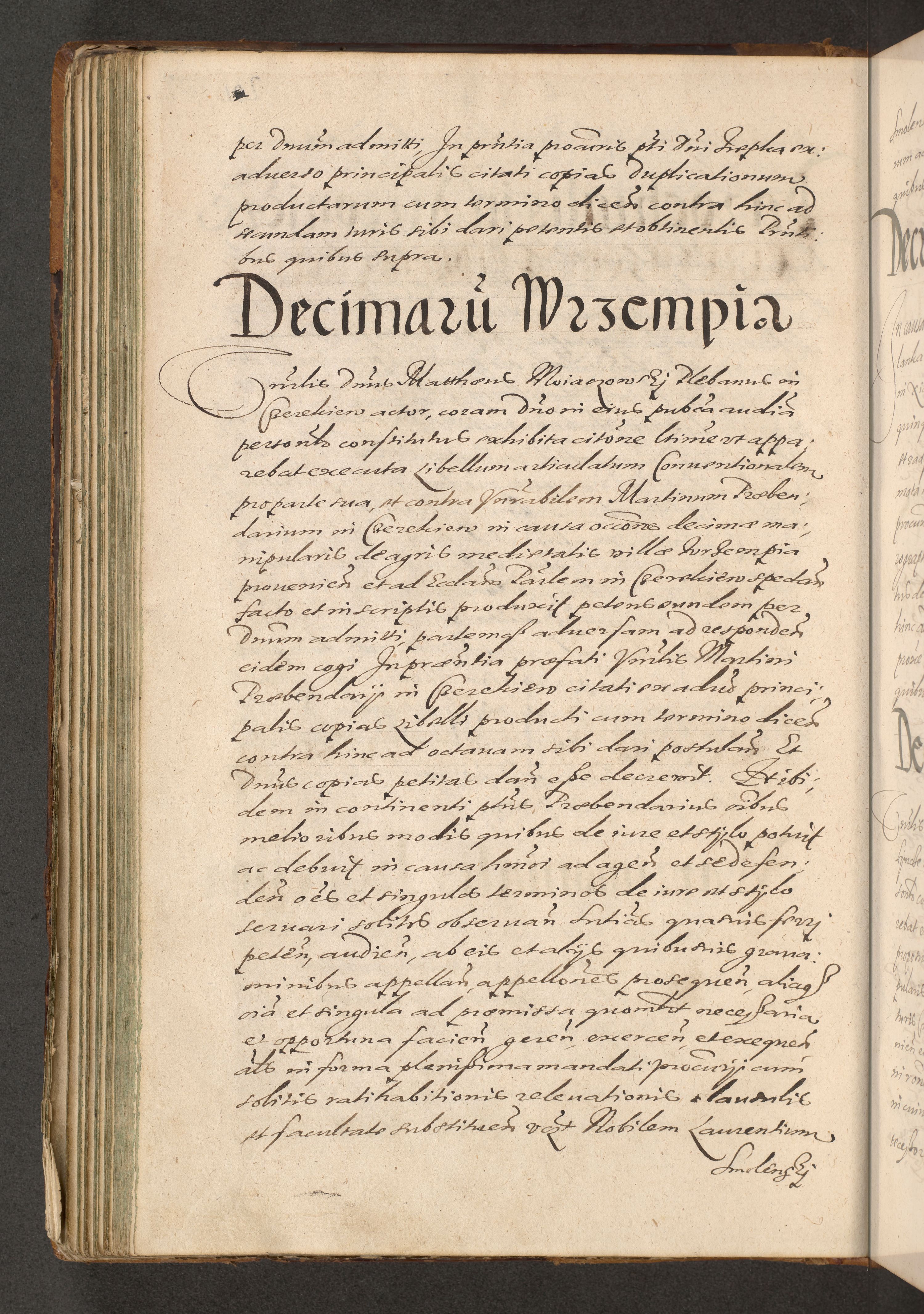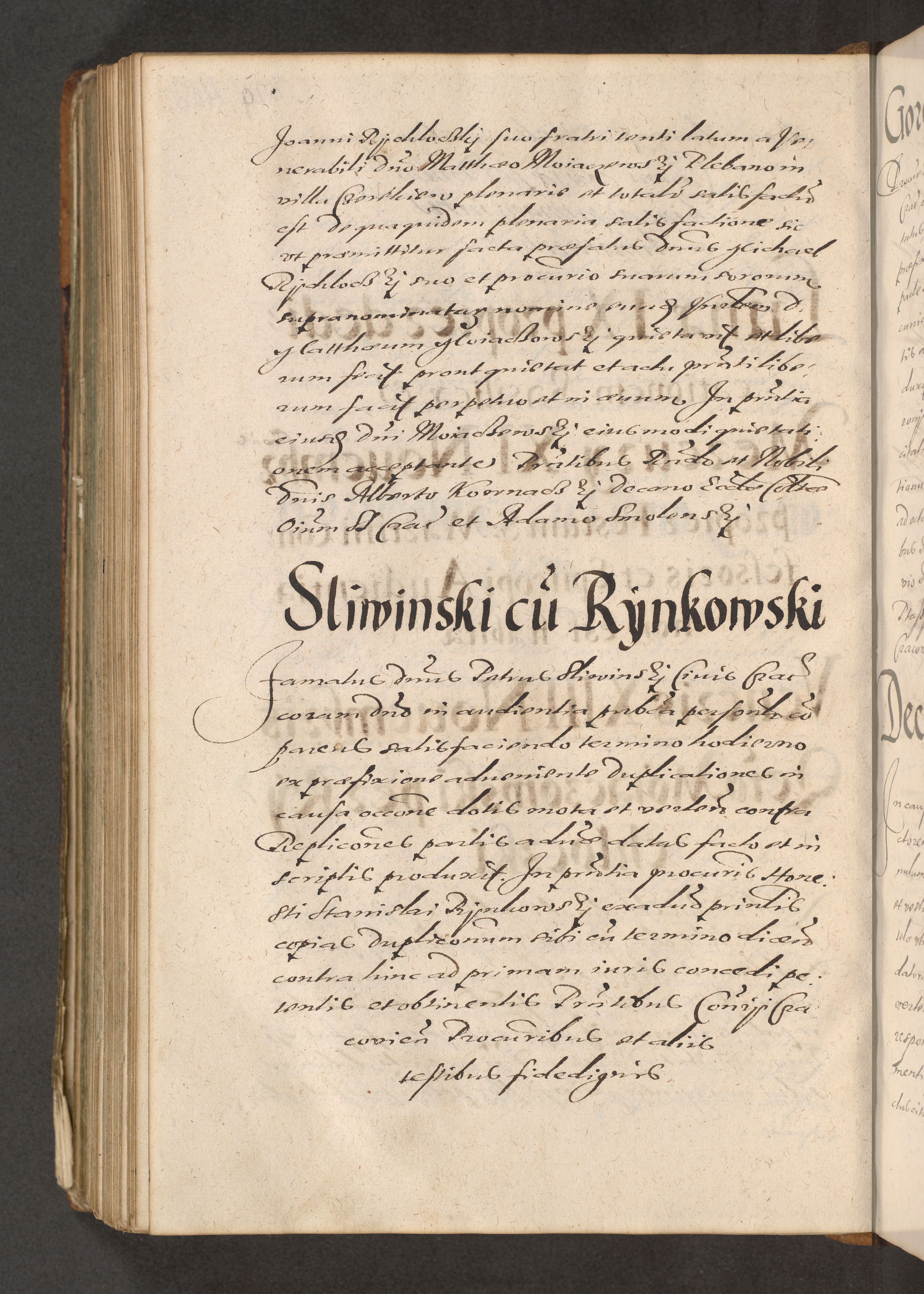 Illustrissimo et Reverendissimo in Christo Patre Domino Domino Petro Tylicki Dei et Apostolice Sedis Gratia Episcopo Cracoviensis Duce Severiensis Acta actorum causarum sententiarum tam interloquutoriarum quam definitivarum decretorum obligationum, quietationum, recognitionum, constitutionum procuratorum etc. etc. coram Admodum Reverendo Domino Thoma Oborski I. V. Doctore Canonico Vicario in Spiritualibus et Officiali generali Cracoviensis in anno Domini Millesimo Sexcentessimo Decimoquarto Cuius Indictio duodecima Pontificus SS. D. N. D. Pauli Divina providentia Papae quinti Anno decimo foeliciter incipiunt
