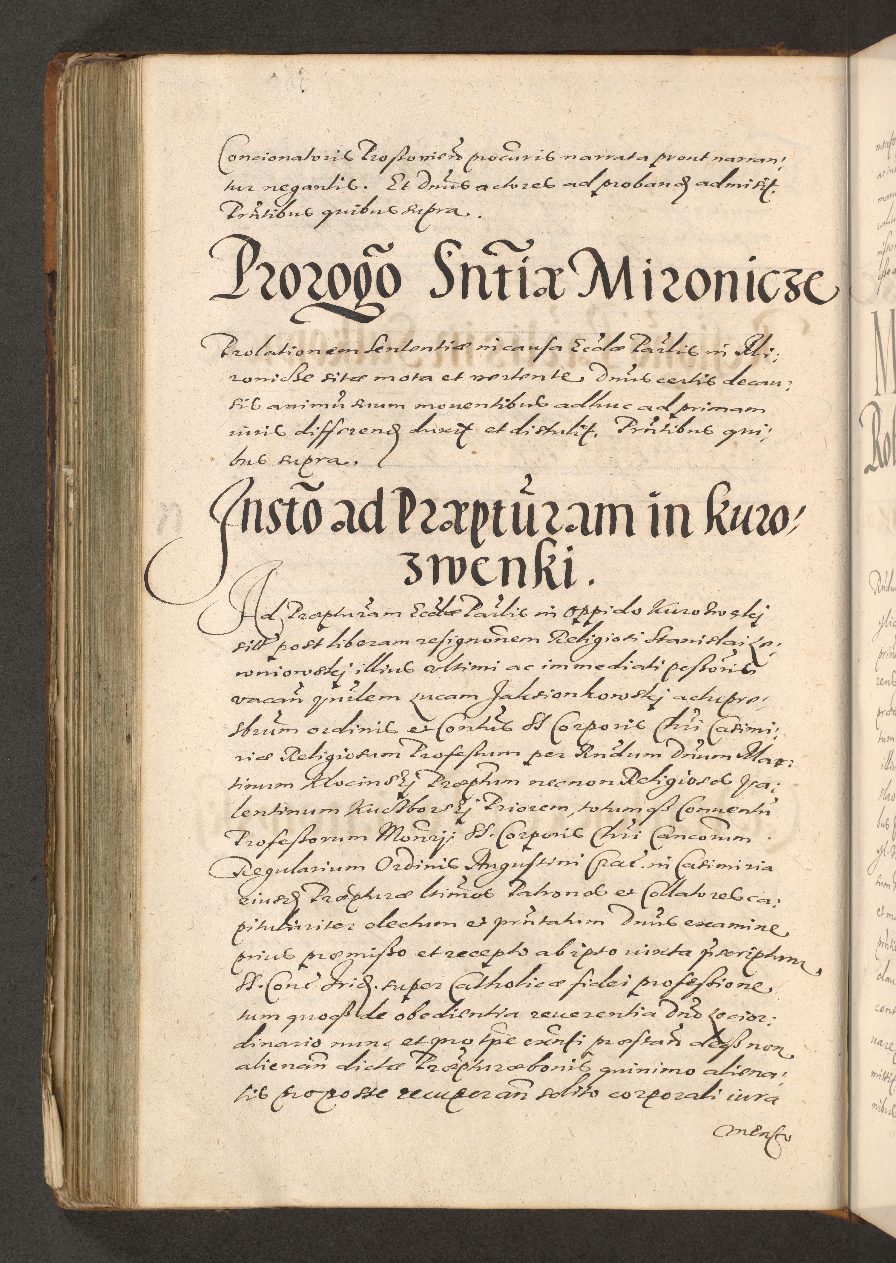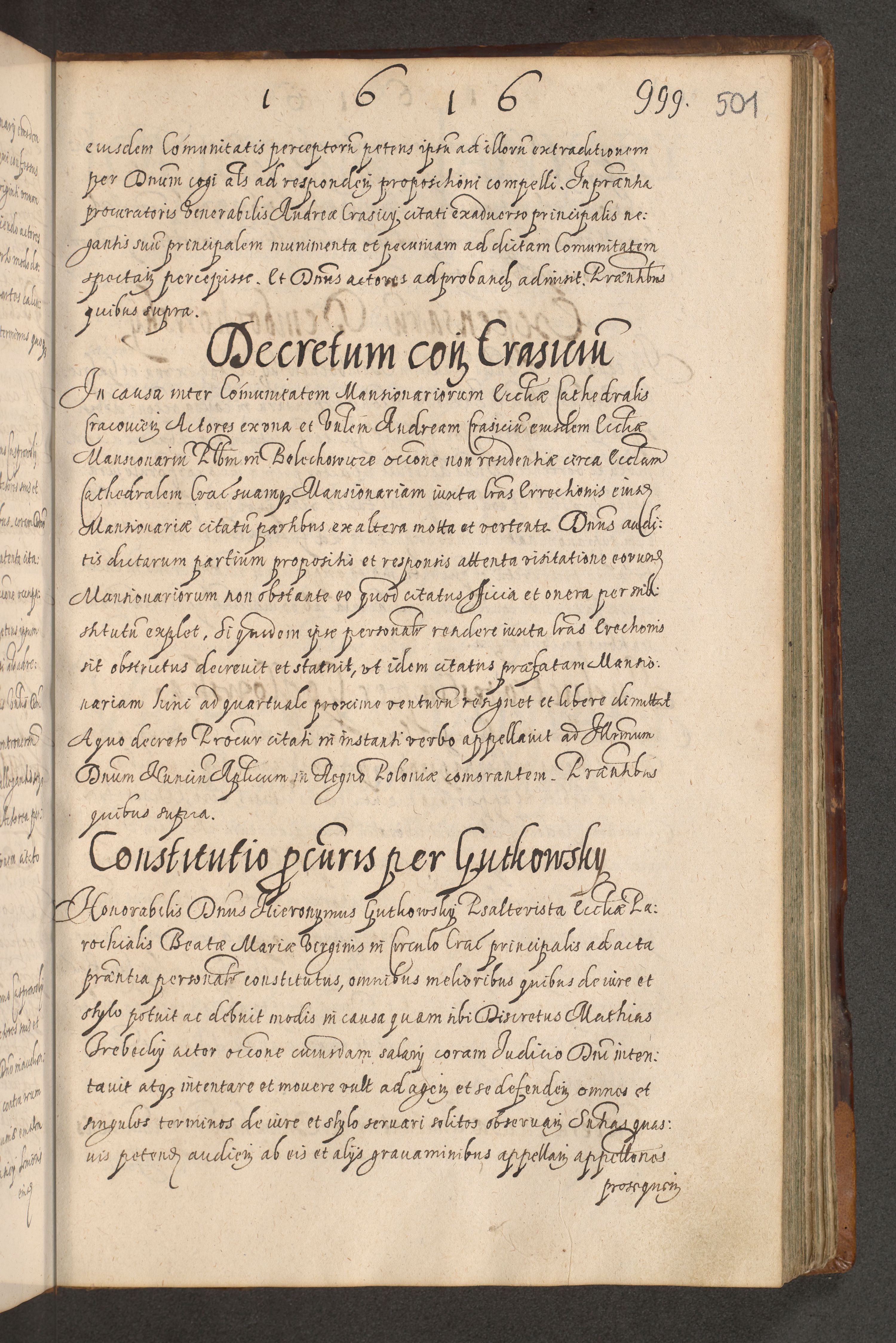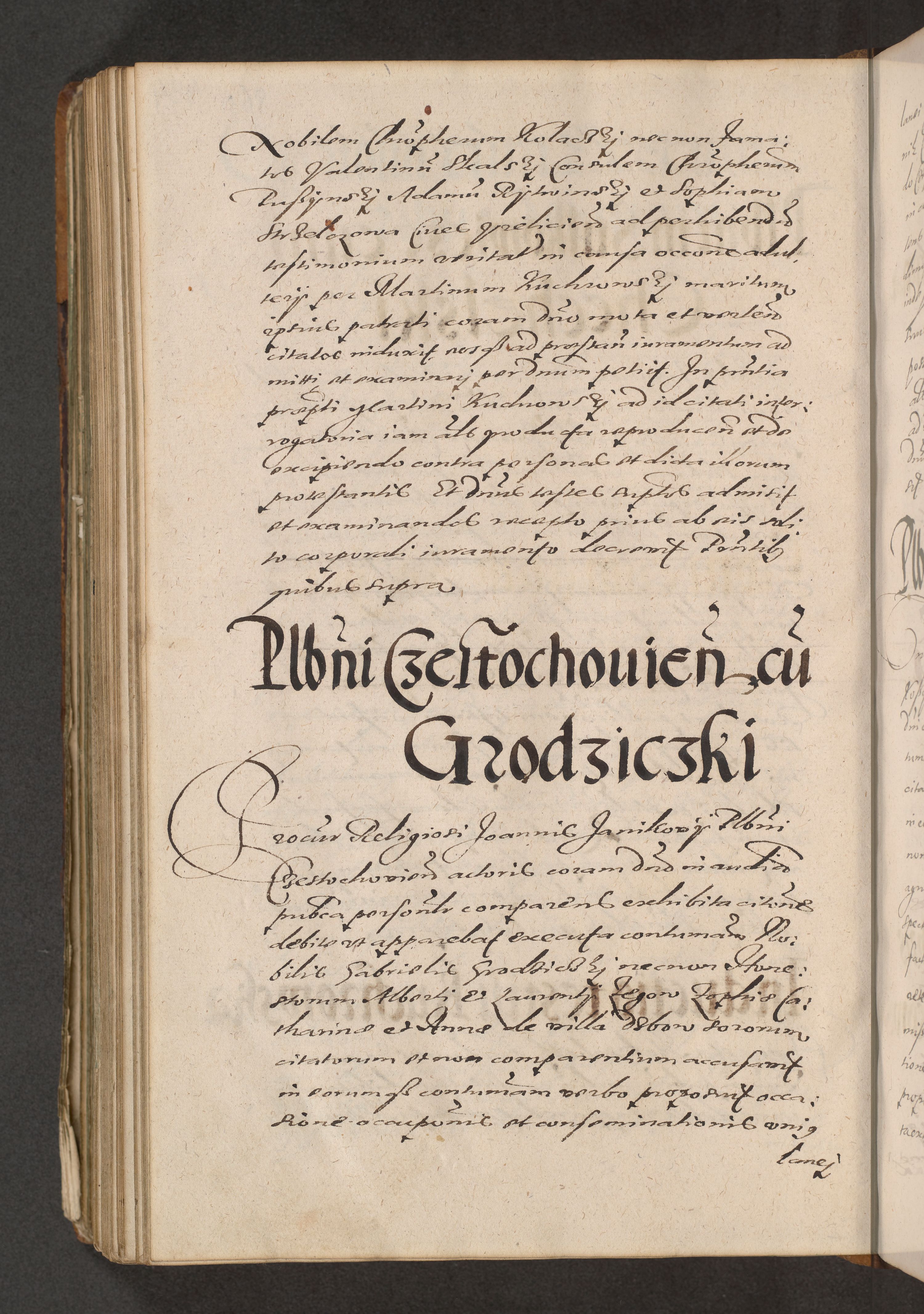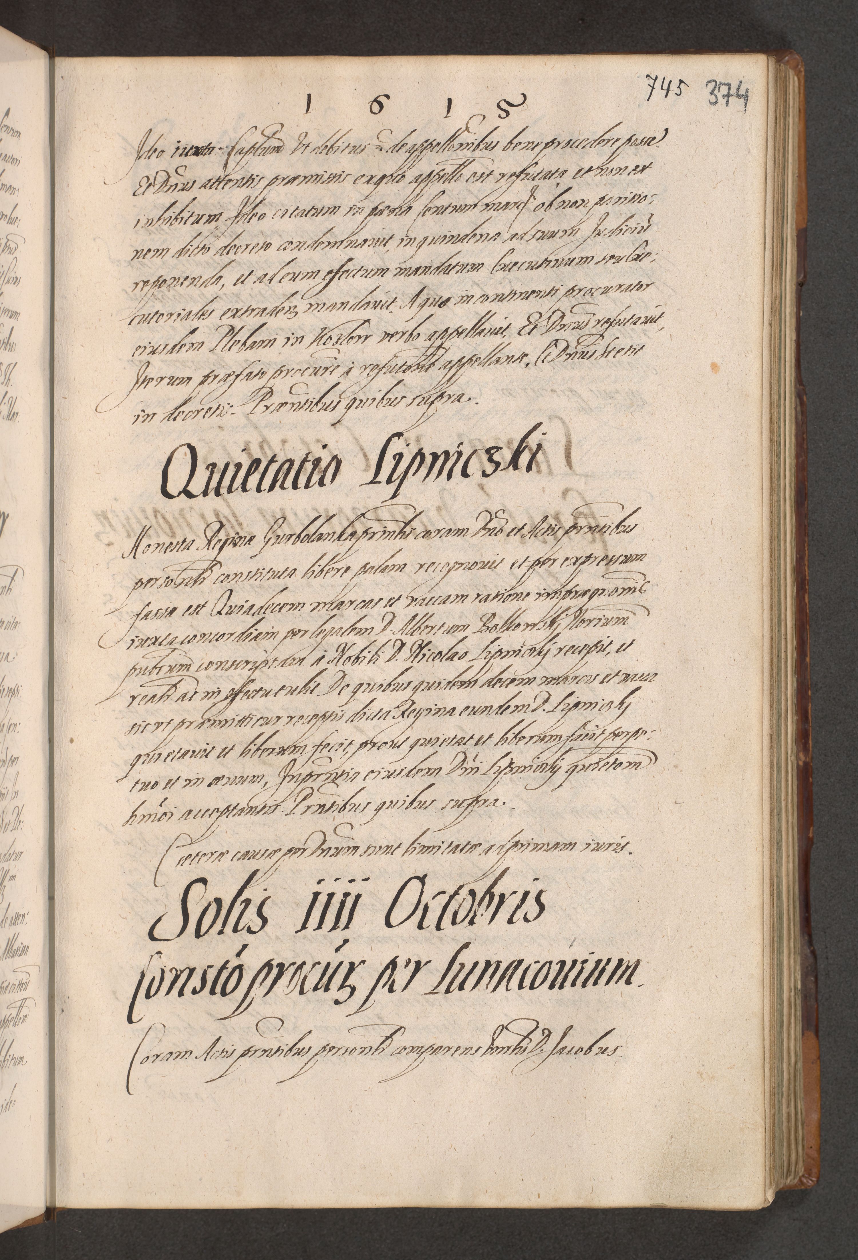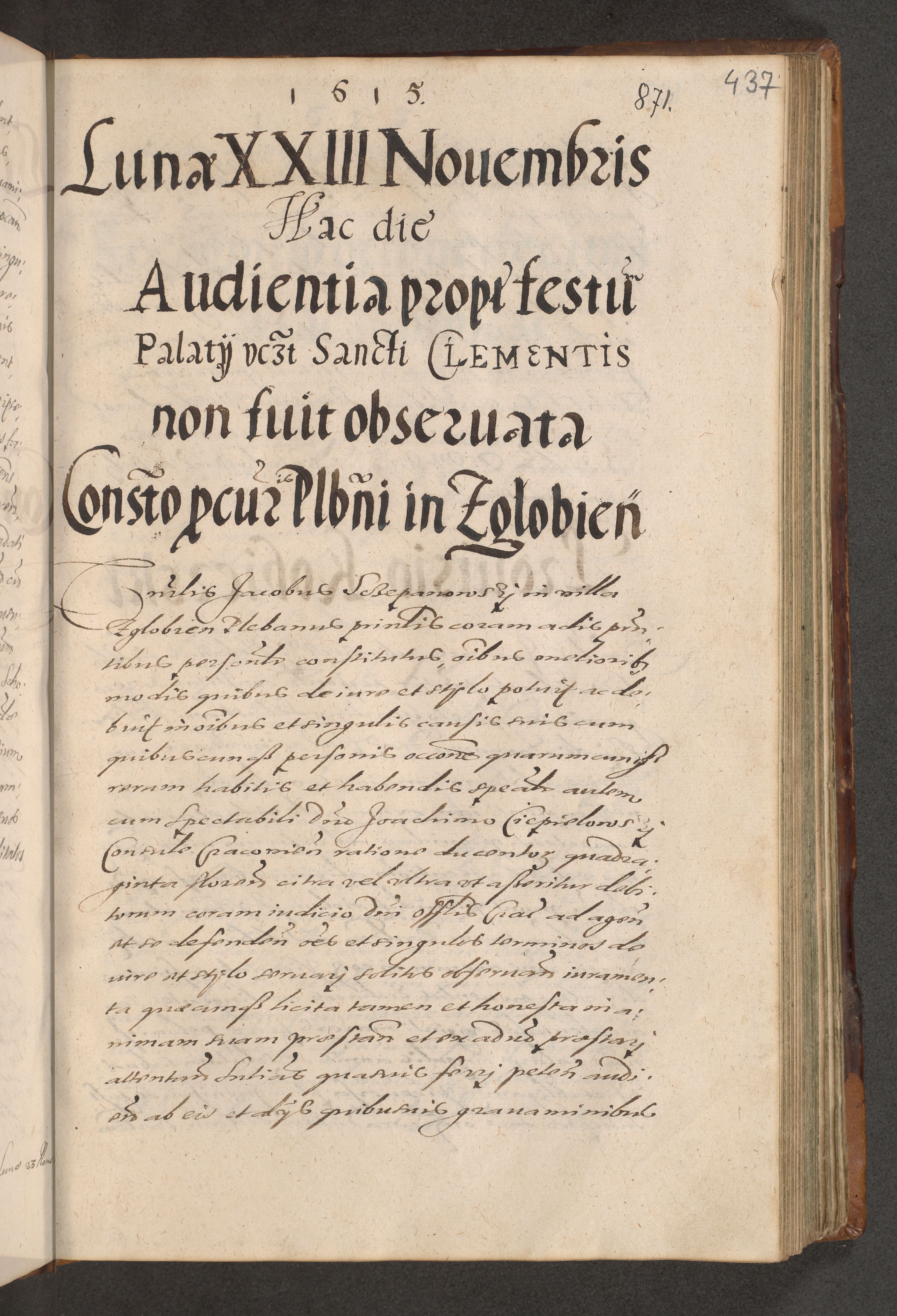 Illustrissimo et Reverendissimo in Christo Patre Domino Domino Petro Tylicki Dei et Apostolice Sedis Gratia Episcopo Cracoviensis Duce Severiensis Acta actorum causarum sententiarum tam interloquutoriarum quam definitivarum decretorum obligationum, quietationum, recognitionum, constitutionum procuratorum etc. etc. coram Admodum Reverendo Domino Thoma Oborski I. V. Doctore Canonico Vicario in Spiritualibus et Officiali generali Cracoviensis in anno Domini Millesimo Sexcentessimo Decimoquarto Cuius Indictio duodecima Pontificus SS. D. N. D. Pauli Divina providentia Papae quinti Anno decimo foeliciter incipiunt