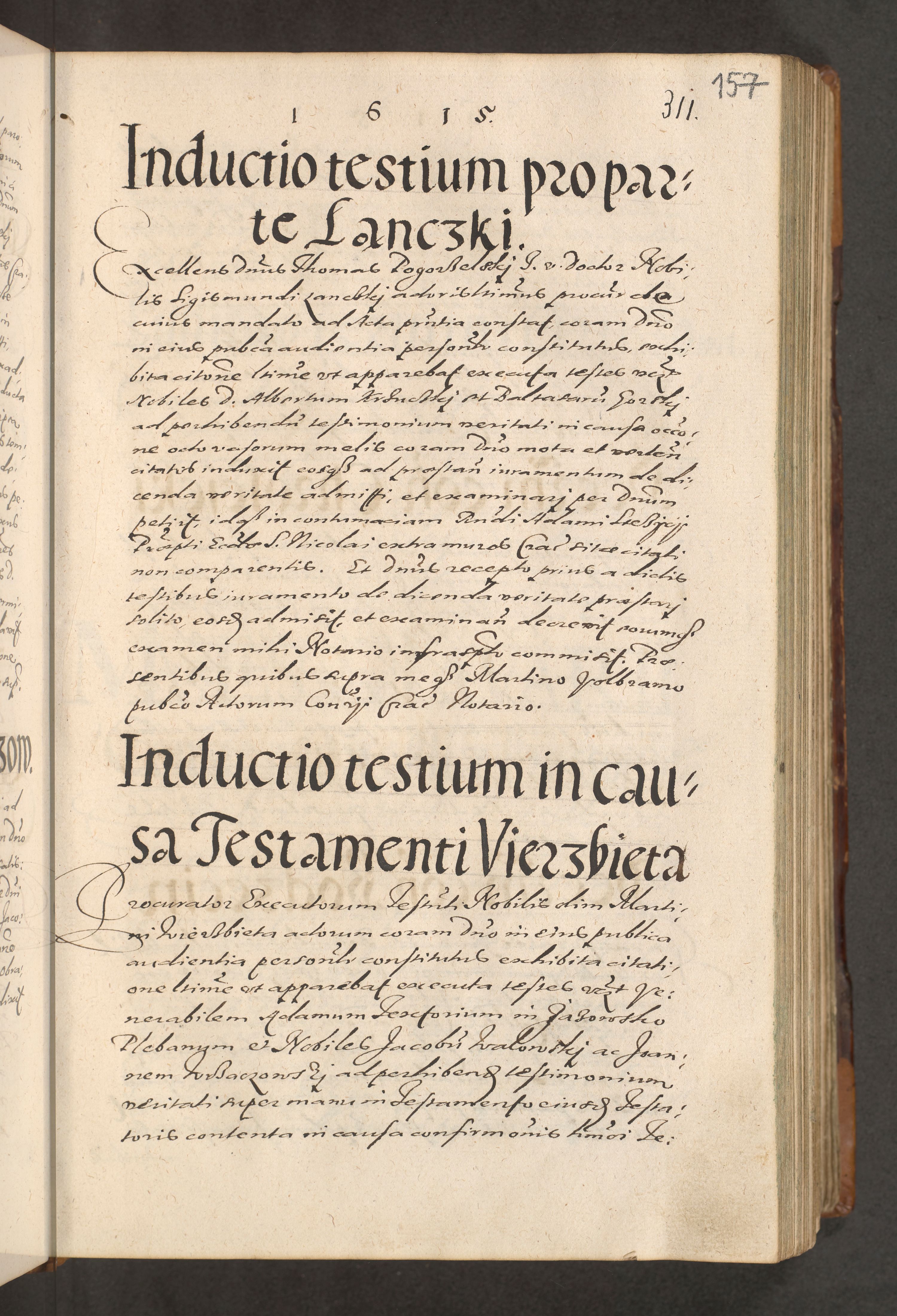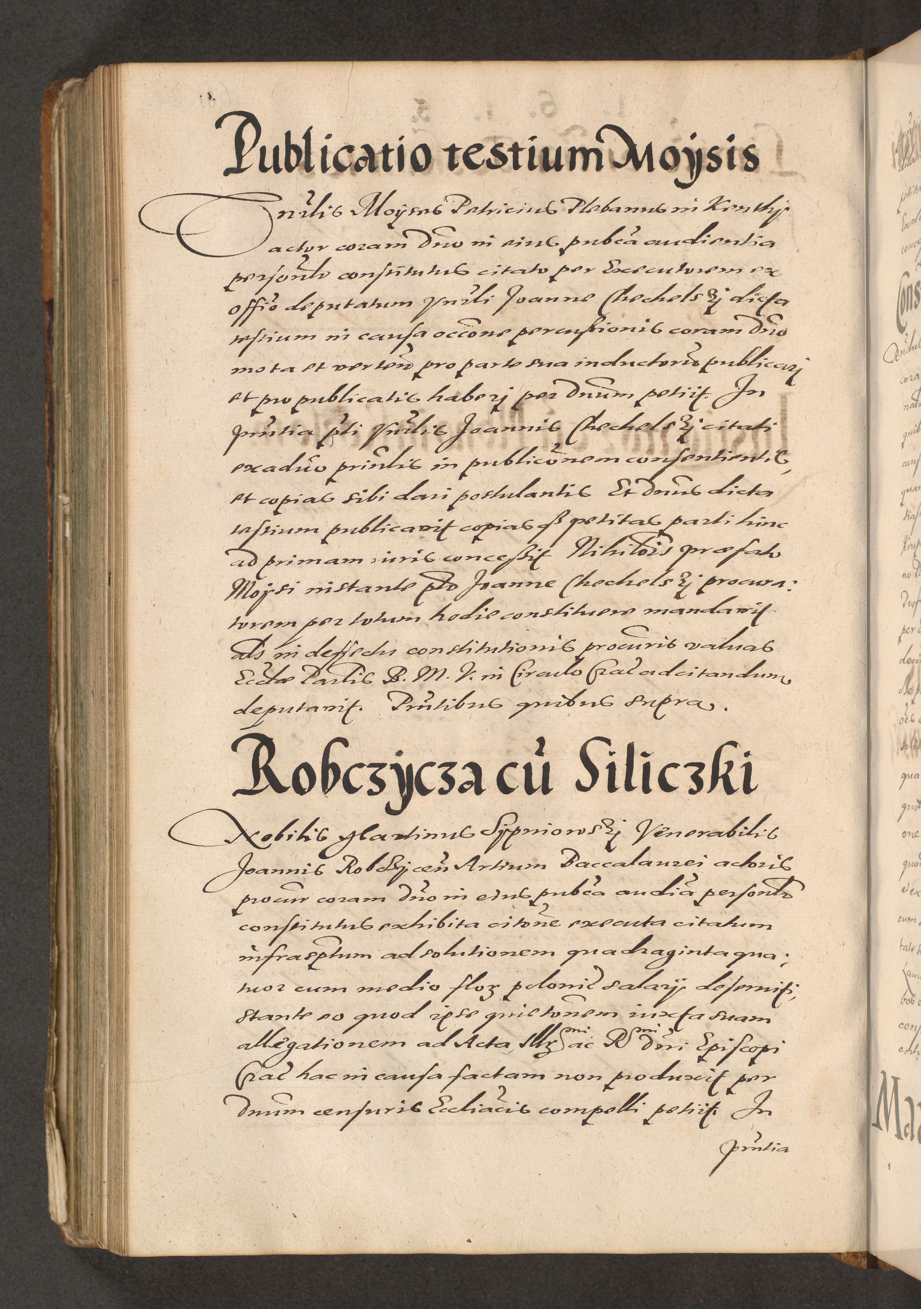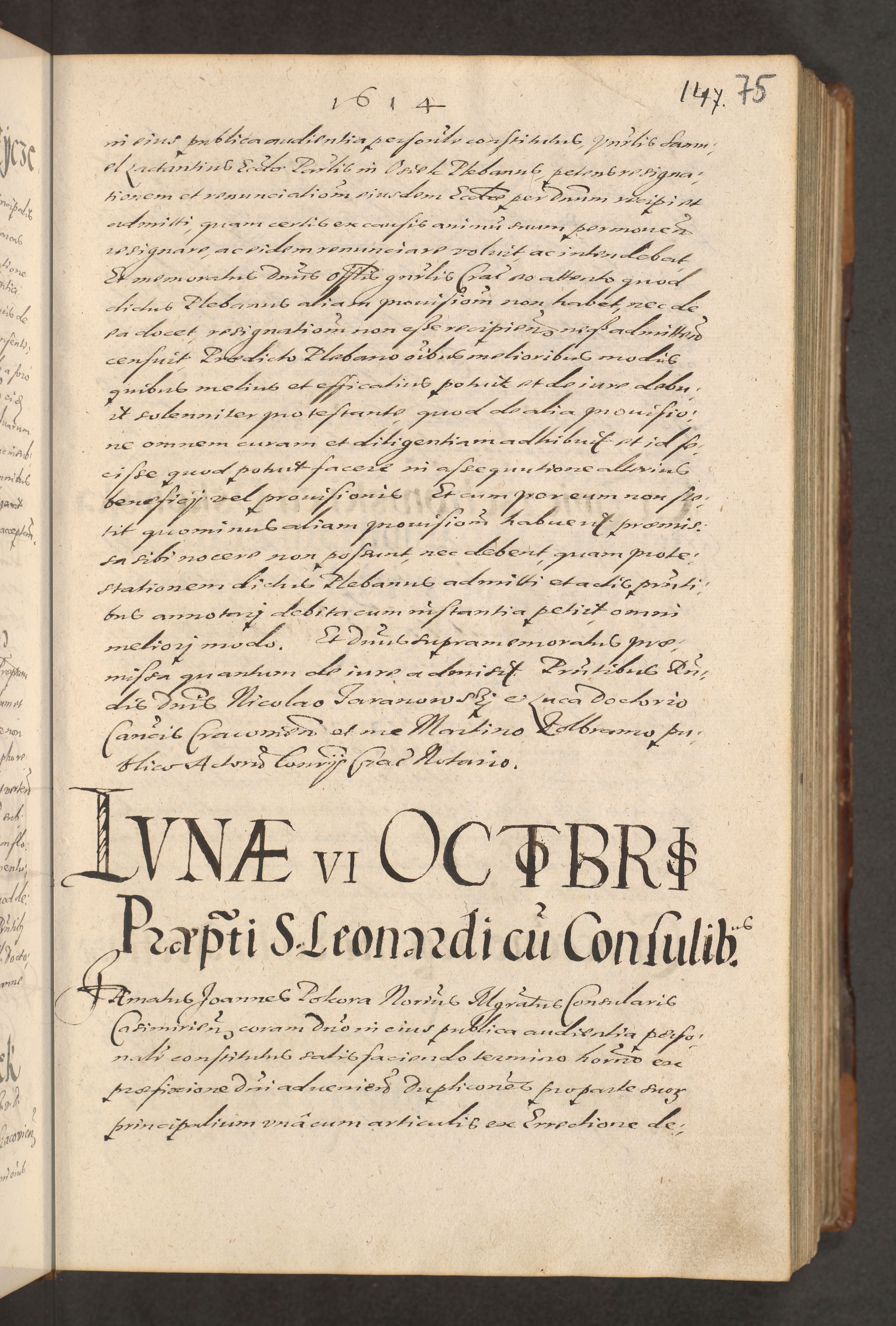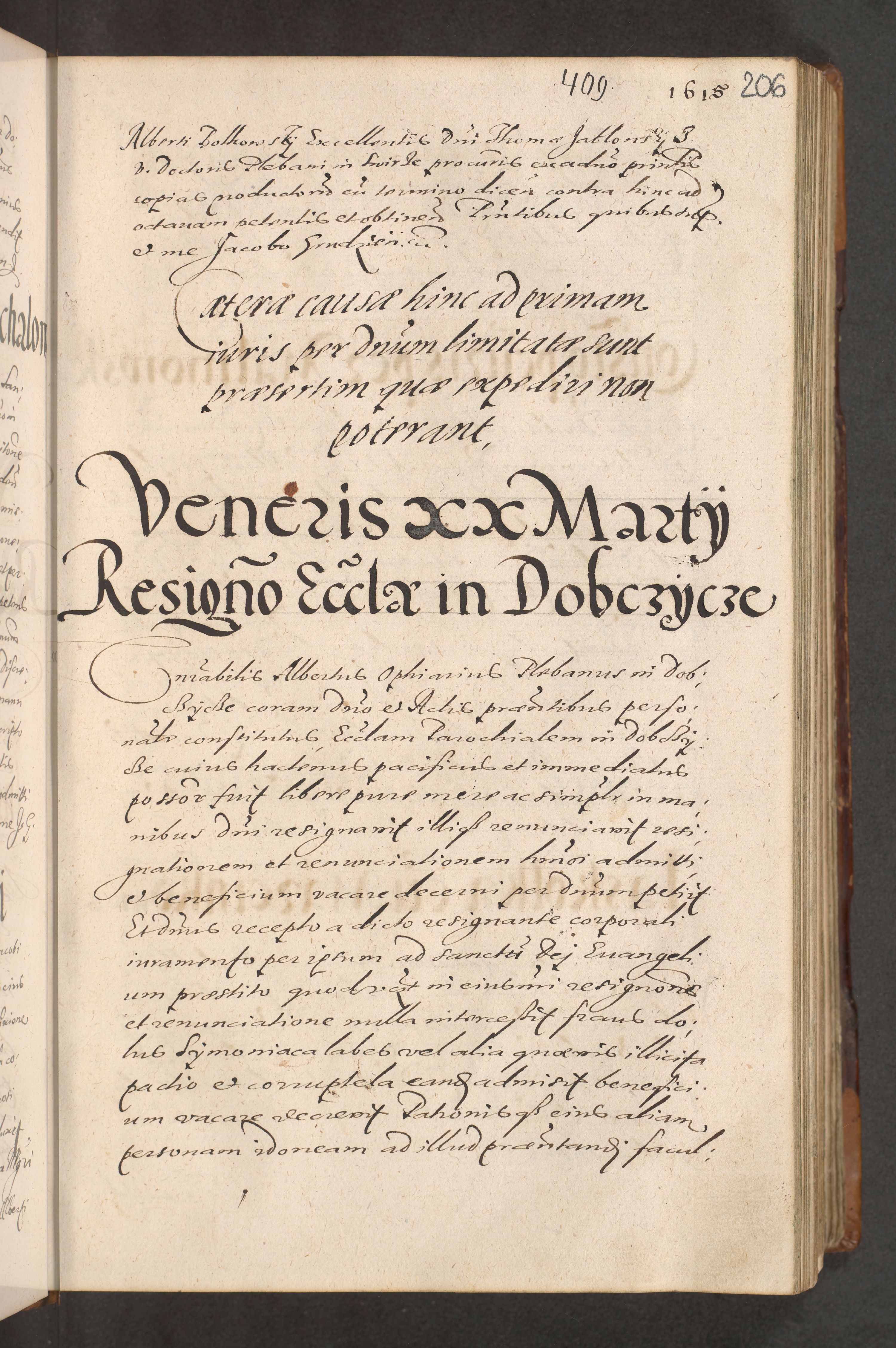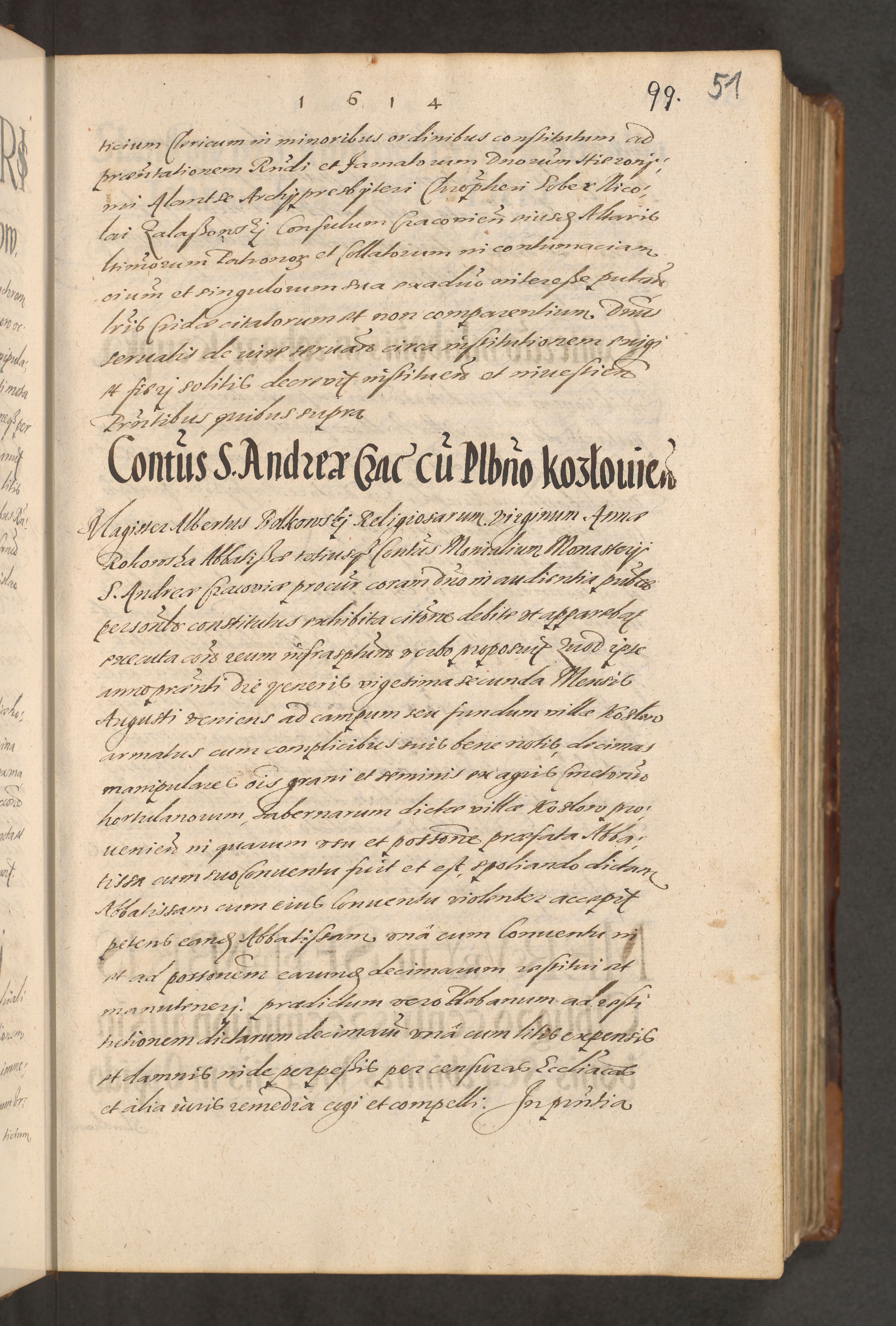 Illustrissimo et Reverendissimo in Christo Patre Domino Domino Petro Tylicki Dei et Apostolice Sedis Gratia Episcopo Cracoviensis Duce Severiensis Acta actorum causarum sententiarum tam interloquutoriarum quam definitivarum decretorum obligationum, quietationum, recognitionum, constitutionum procuratorum etc. etc. coram Admodum Reverendo Domino Thoma Oborski I. V. Doctore Canonico Vicario in Spiritualibus et Officiali generali Cracoviensis in anno Domini Millesimo Sexcentessimo Decimoquarto Cuius Indictio duodecima Pontificus SS. D. N. D. Pauli Divina providentia Papae quinti Anno decimo foeliciter incipiunt