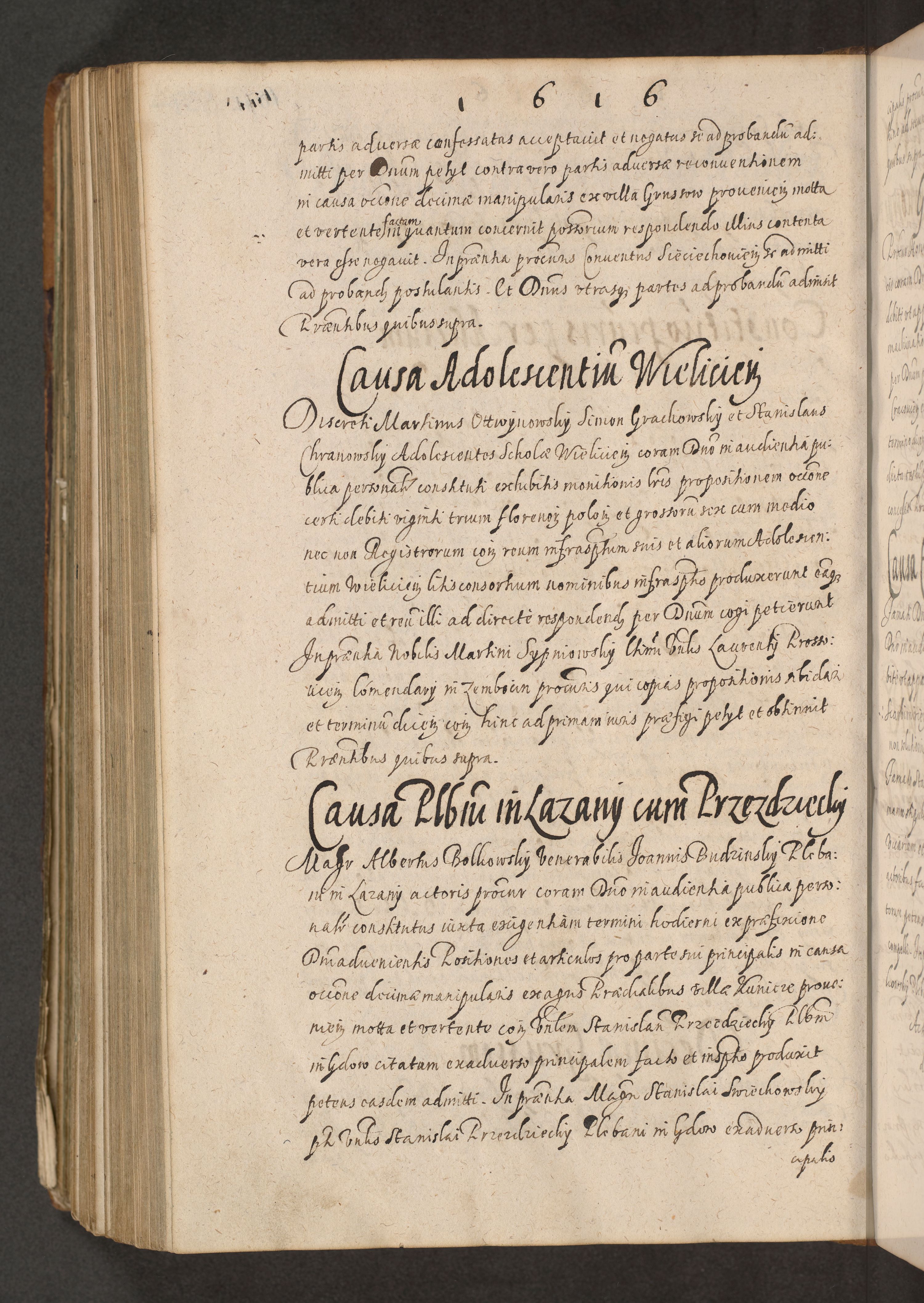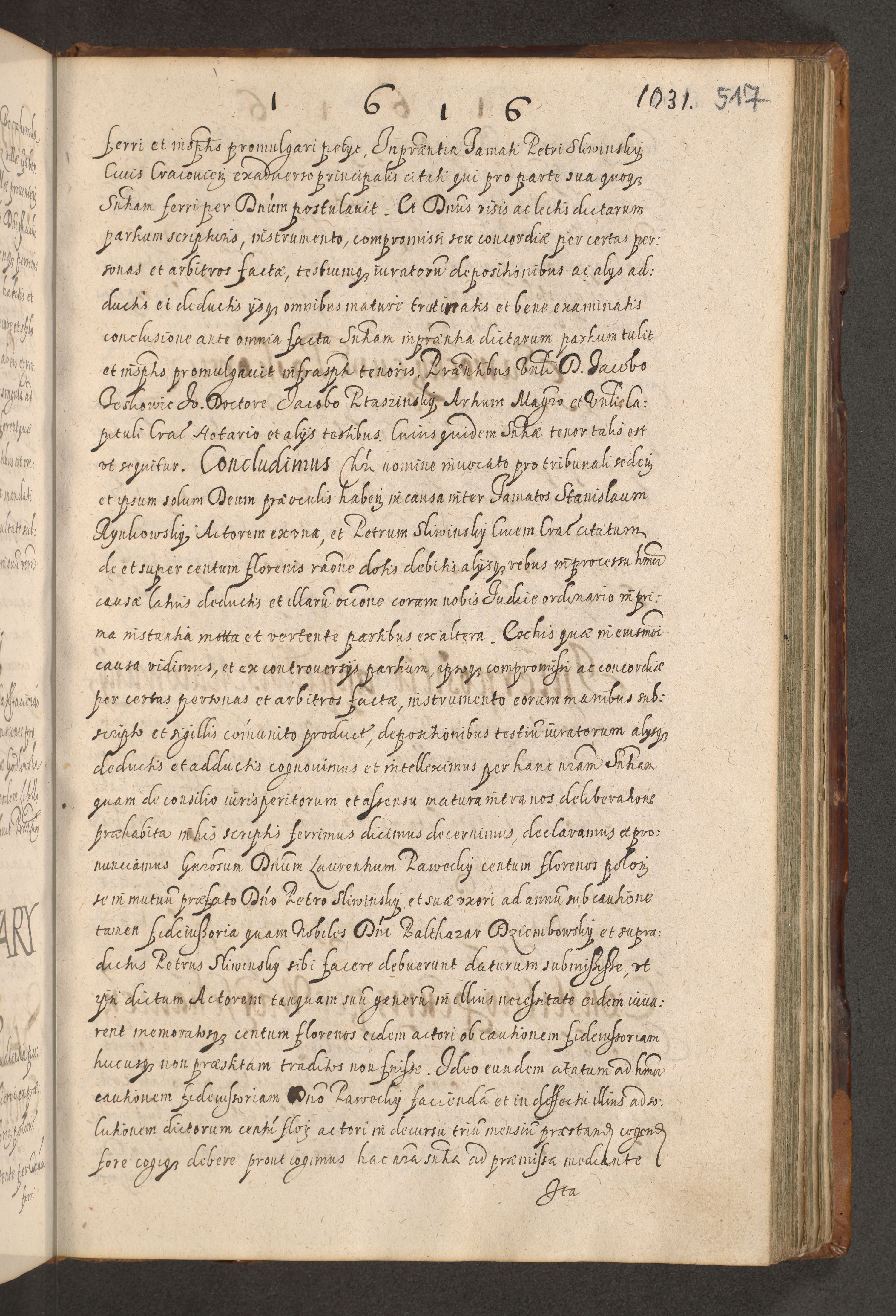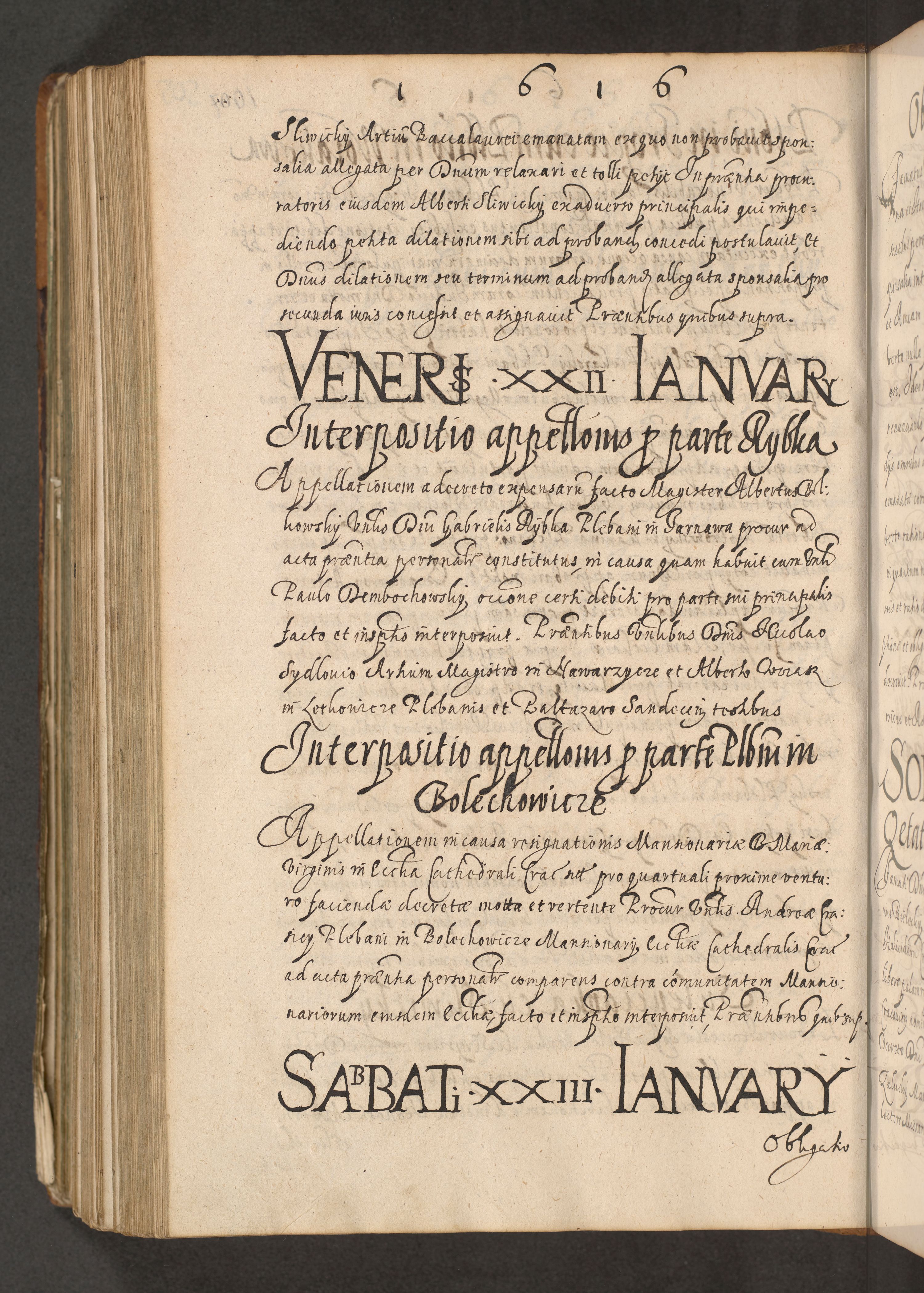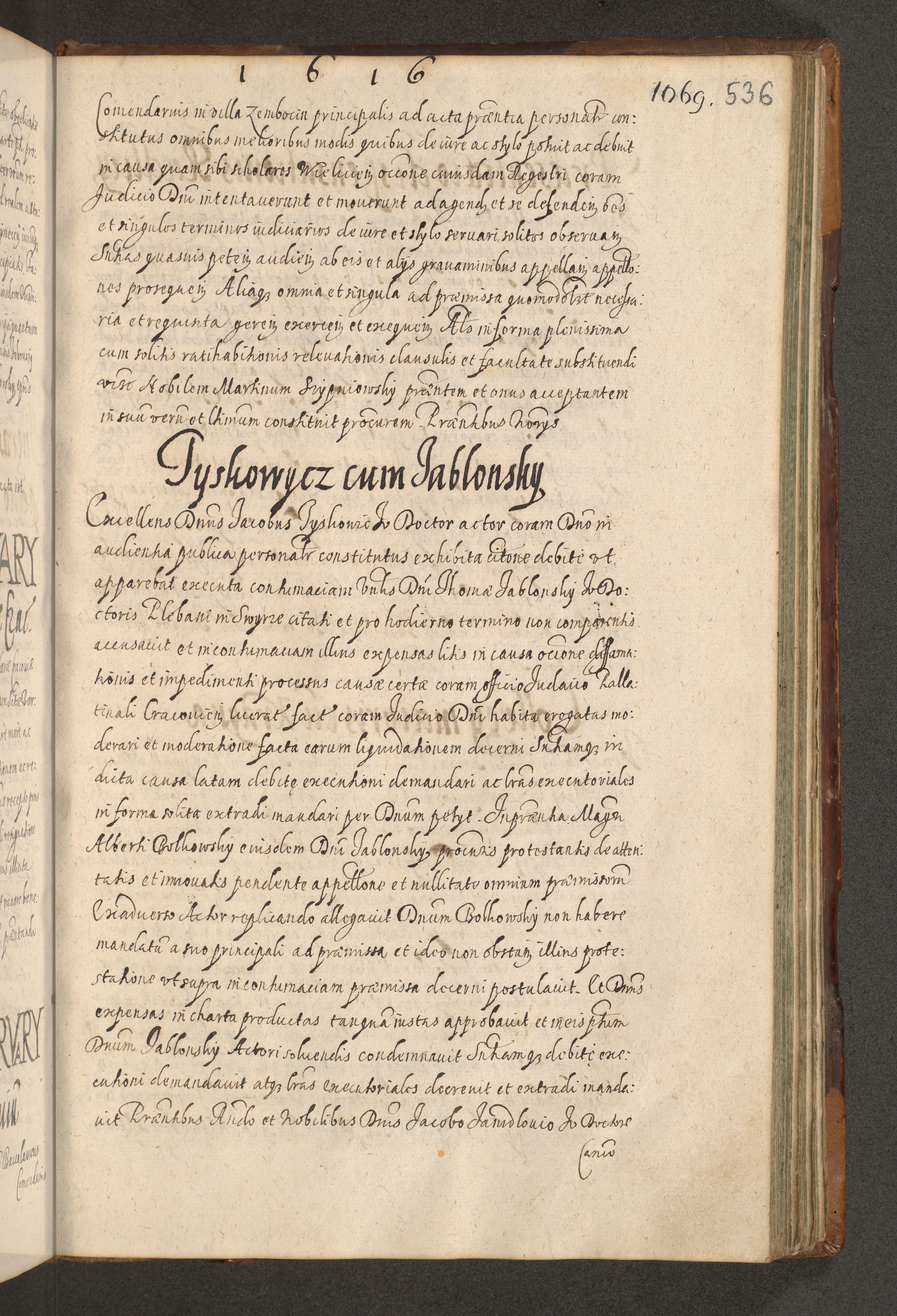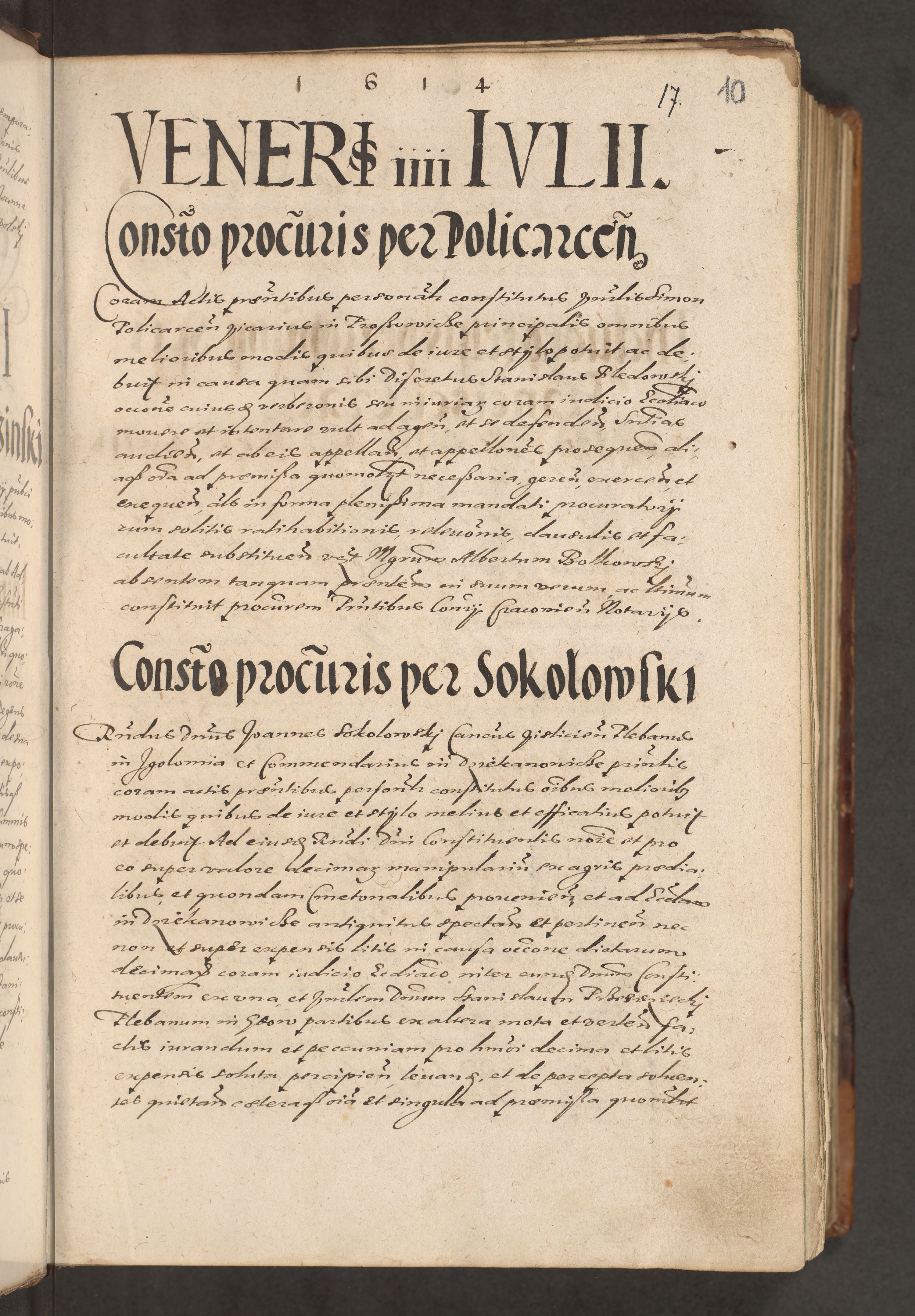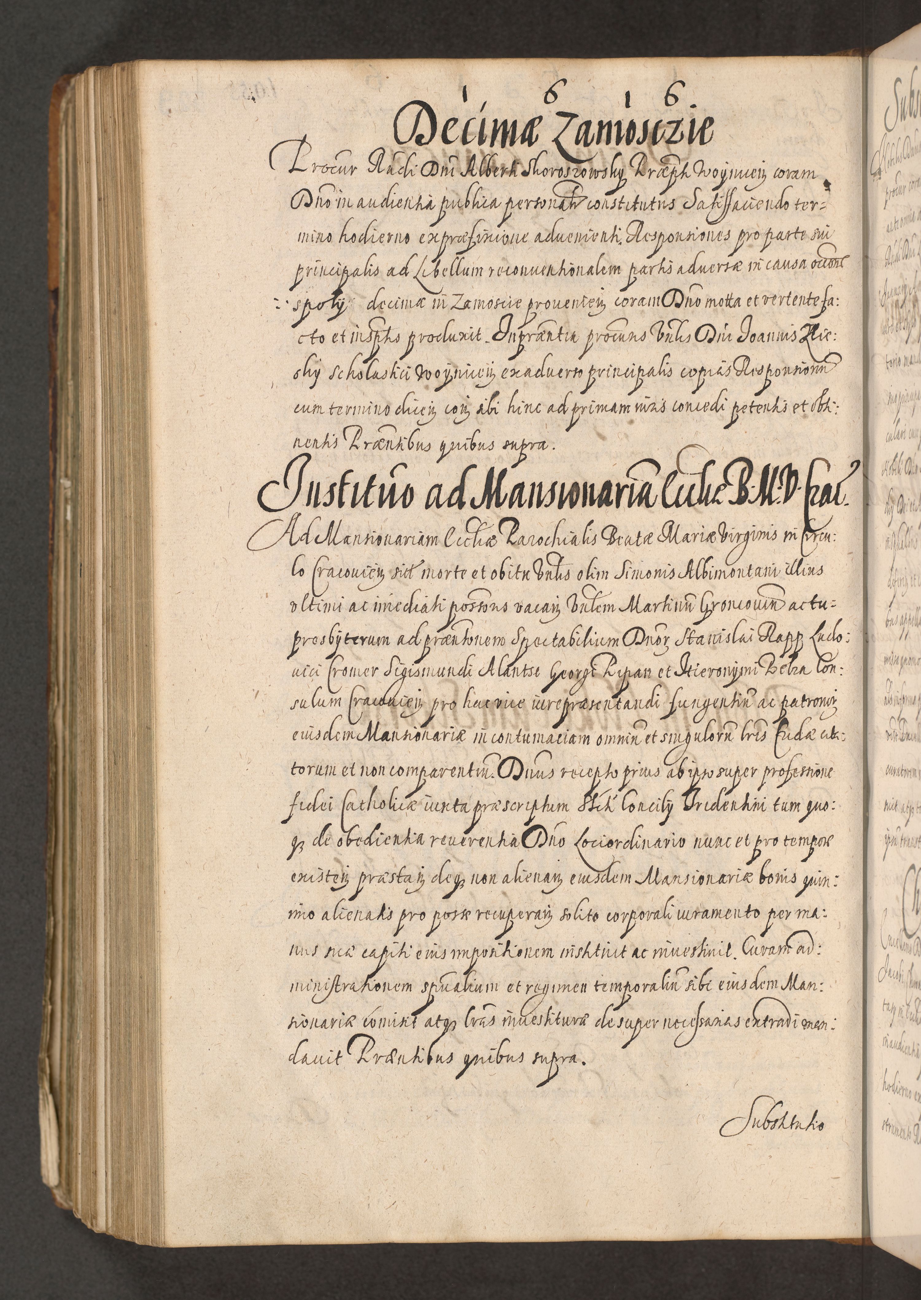 Illustrissimo et Reverendissimo in Christo Patre Domino Domino Petro Tylicki Dei et Apostolice Sedis Gratia Episcopo Cracoviensis Duce Severiensis Acta actorum causarum sententiarum tam interloquutoriarum quam definitivarum decretorum obligationum, quietationum, recognitionum, constitutionum procuratorum etc. etc. coram Admodum Reverendo Domino Thoma Oborski I. V. Doctore Canonico Vicario in Spiritualibus et Officiali generali Cracoviensis in anno Domini Millesimo Sexcentessimo Decimoquarto Cuius Indictio duodecima Pontificus SS. D. N. D. Pauli Divina providentia Papae quinti Anno decimo foeliciter incipiunt