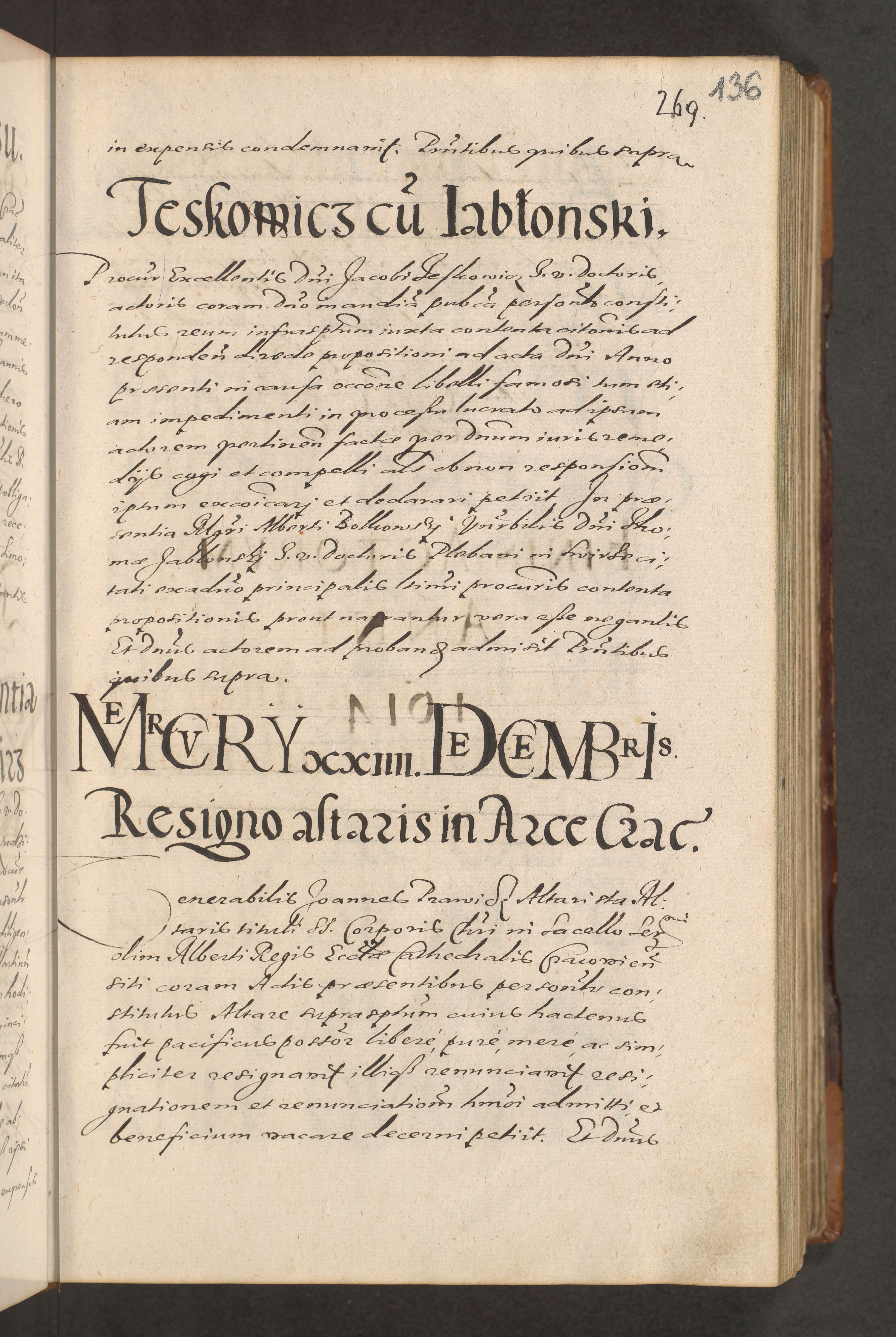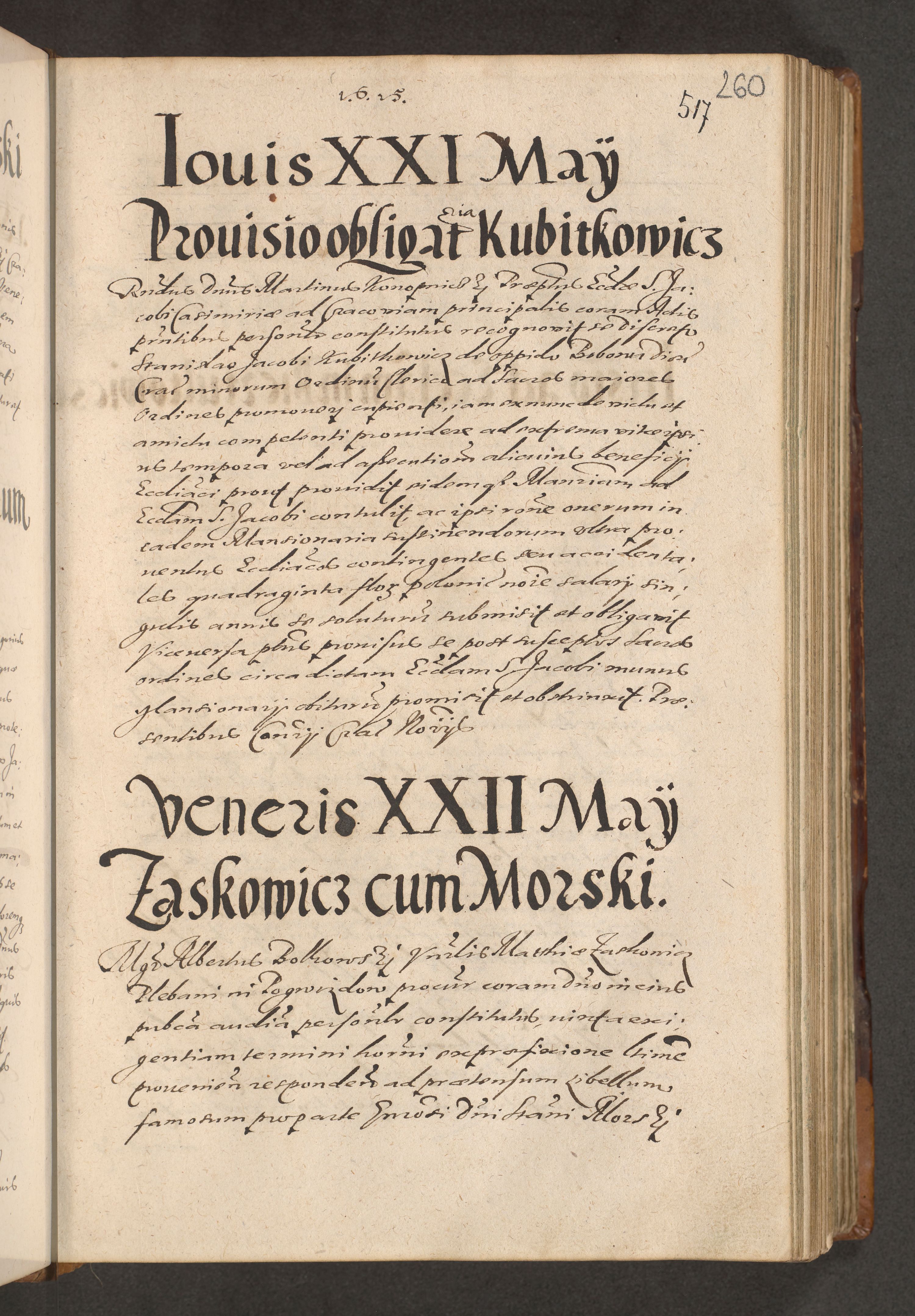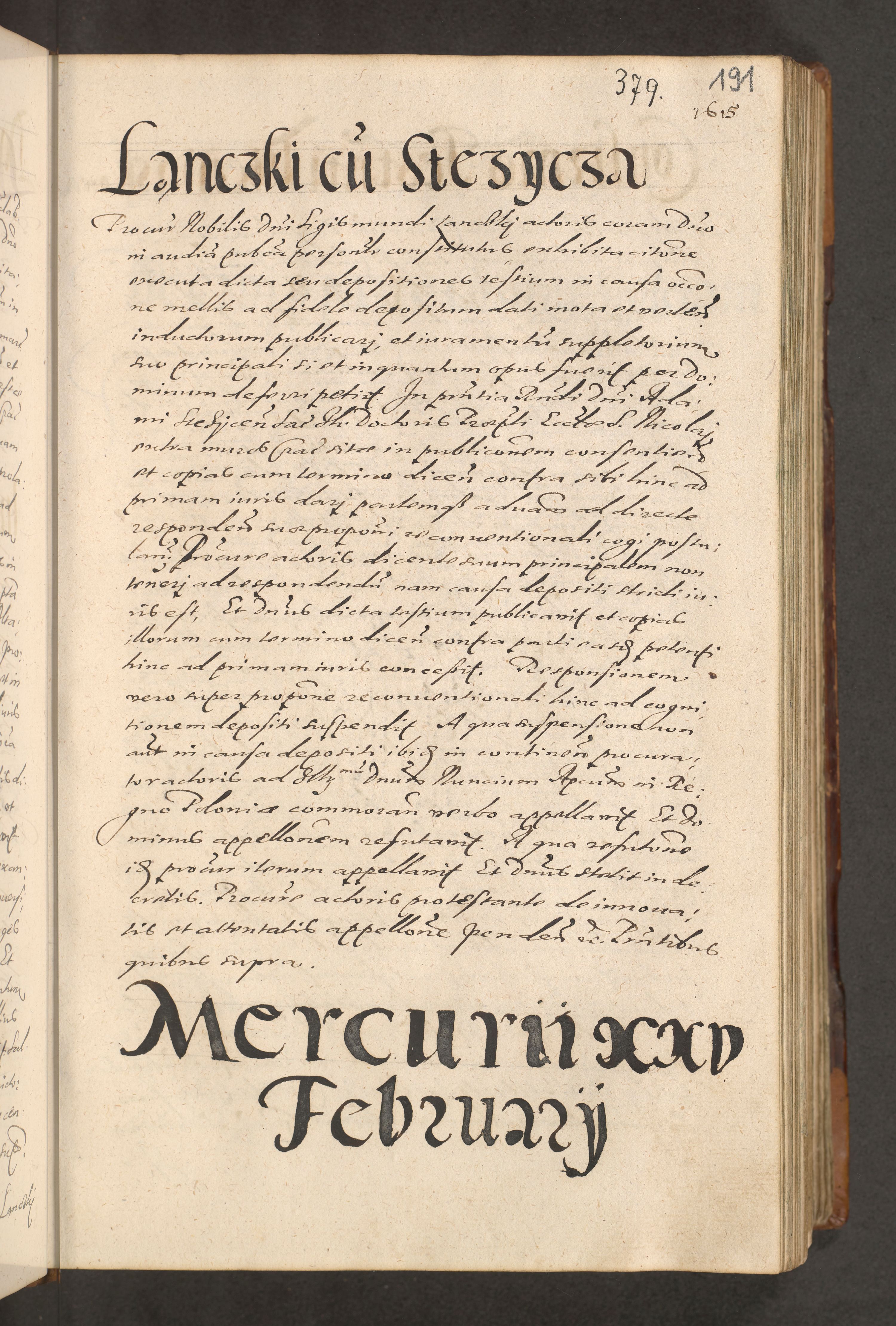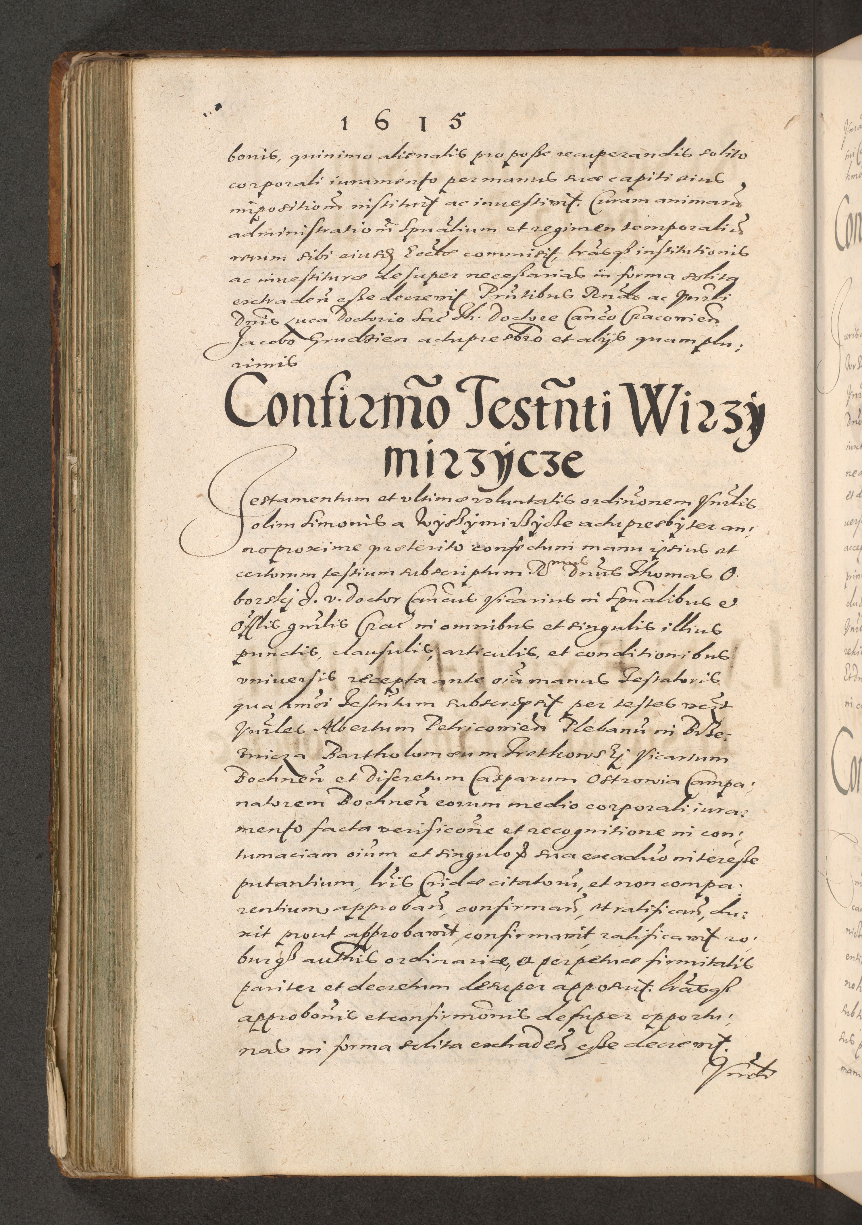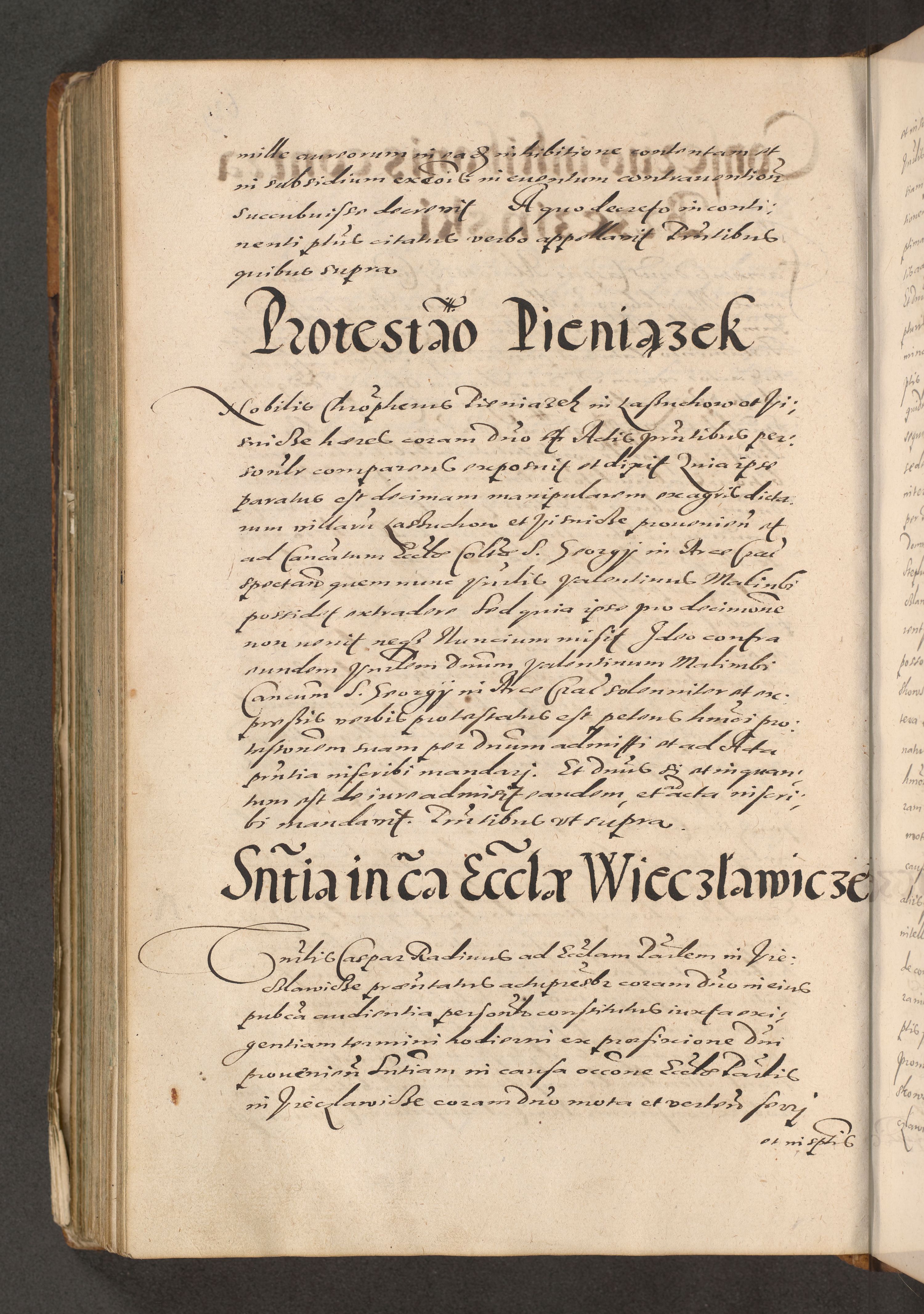 Illustrissimo et Reverendissimo in Christo Patre Domino Domino Petro Tylicki Dei et Apostolice Sedis Gratia Episcopo Cracoviensis Duce Severiensis Acta actorum causarum sententiarum tam interloquutoriarum quam definitivarum decretorum obligationum, quietationum, recognitionum, constitutionum procuratorum etc. etc. coram Admodum Reverendo Domino Thoma Oborski I. V. Doctore Canonico Vicario in Spiritualibus et Officiali generali Cracoviensis in anno Domini Millesimo Sexcentessimo Decimoquarto Cuius Indictio duodecima Pontificus SS. D. N. D. Pauli Divina providentia Papae quinti Anno decimo foeliciter incipiunt
