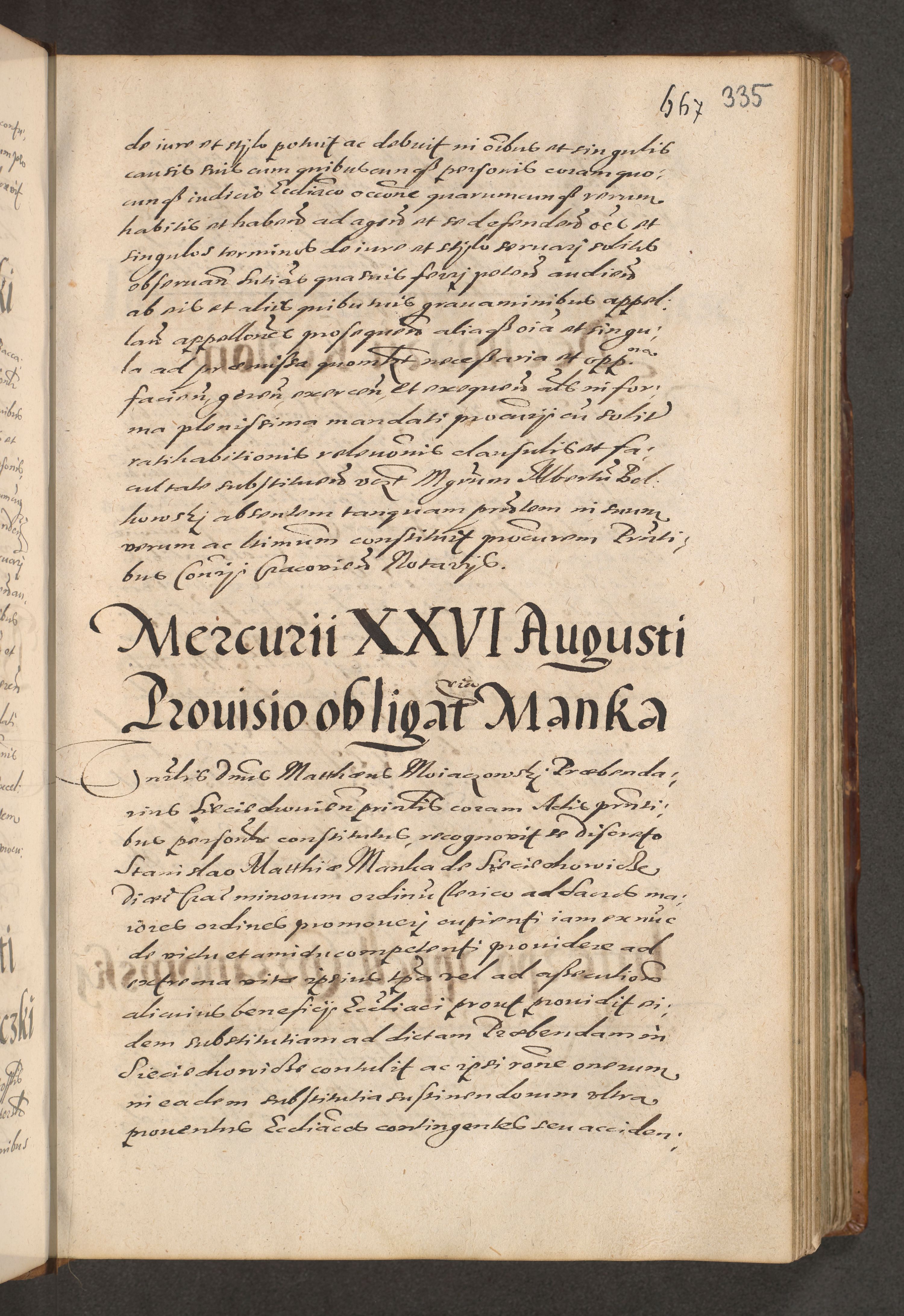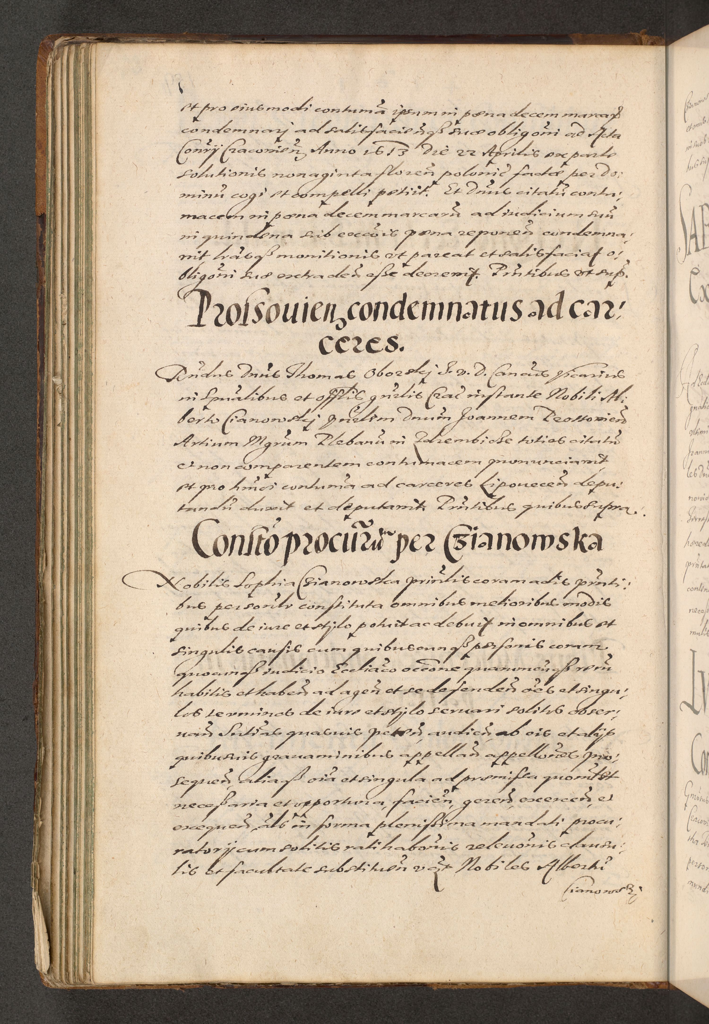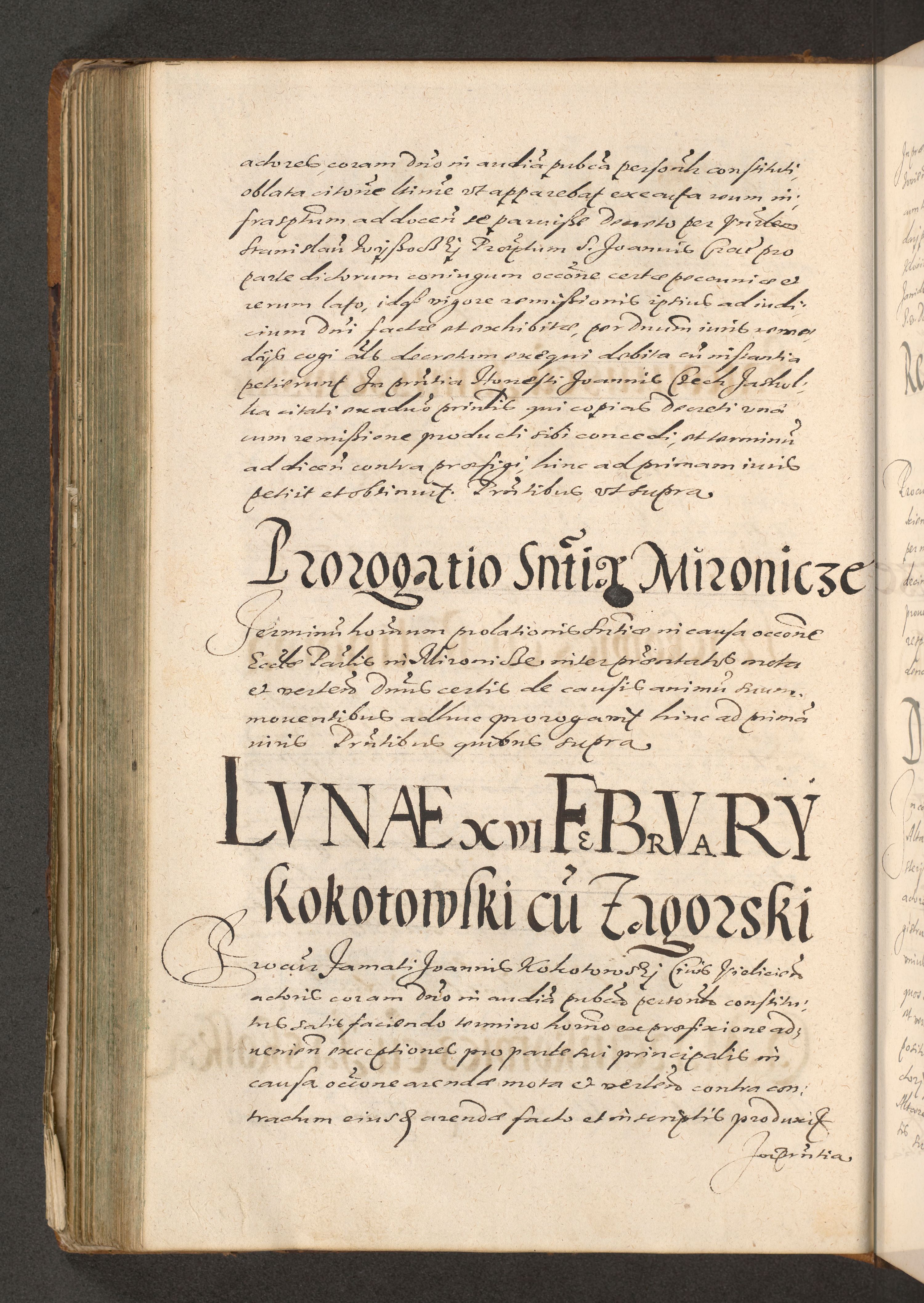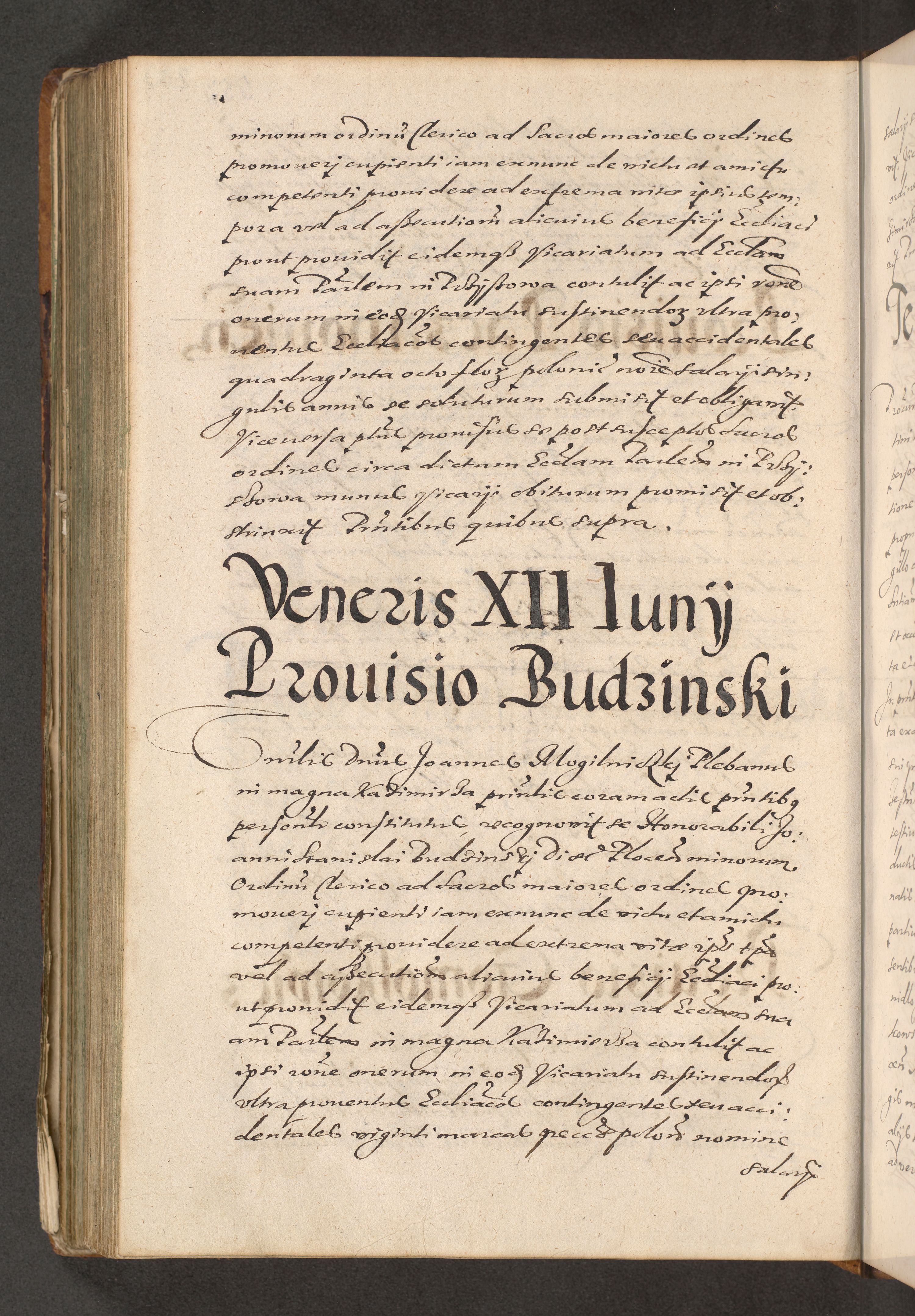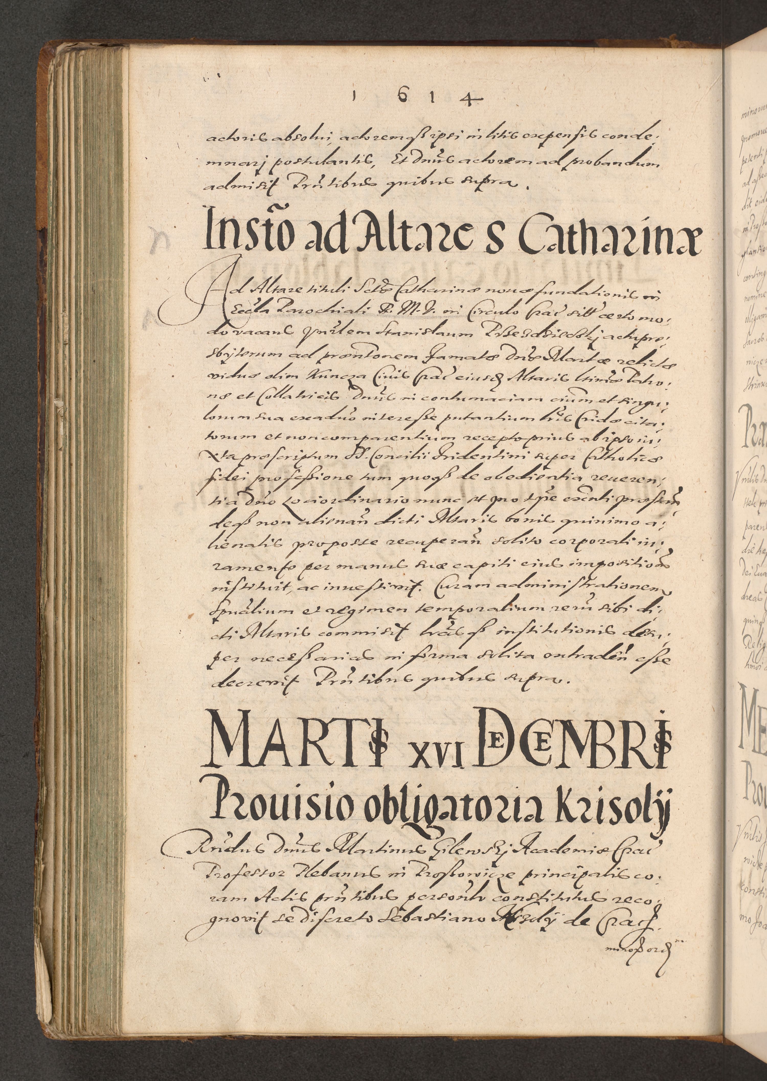 Illustrissimo et Reverendissimo in Christo Patre Domino Domino Petro Tylicki Dei et Apostolice Sedis Gratia Episcopo Cracoviensis Duce Severiensis Acta actorum causarum sententiarum tam interloquutoriarum quam definitivarum decretorum obligationum, quietationum, recognitionum, constitutionum procuratorum etc. etc. coram Admodum Reverendo Domino Thoma Oborski I. V. Doctore Canonico Vicario in Spiritualibus et Officiali generali Cracoviensis in anno Domini Millesimo Sexcentessimo Decimoquarto Cuius Indictio duodecima Pontificus SS. D. N. D. Pauli Divina providentia Papae quinti Anno decimo foeliciter incipiunt